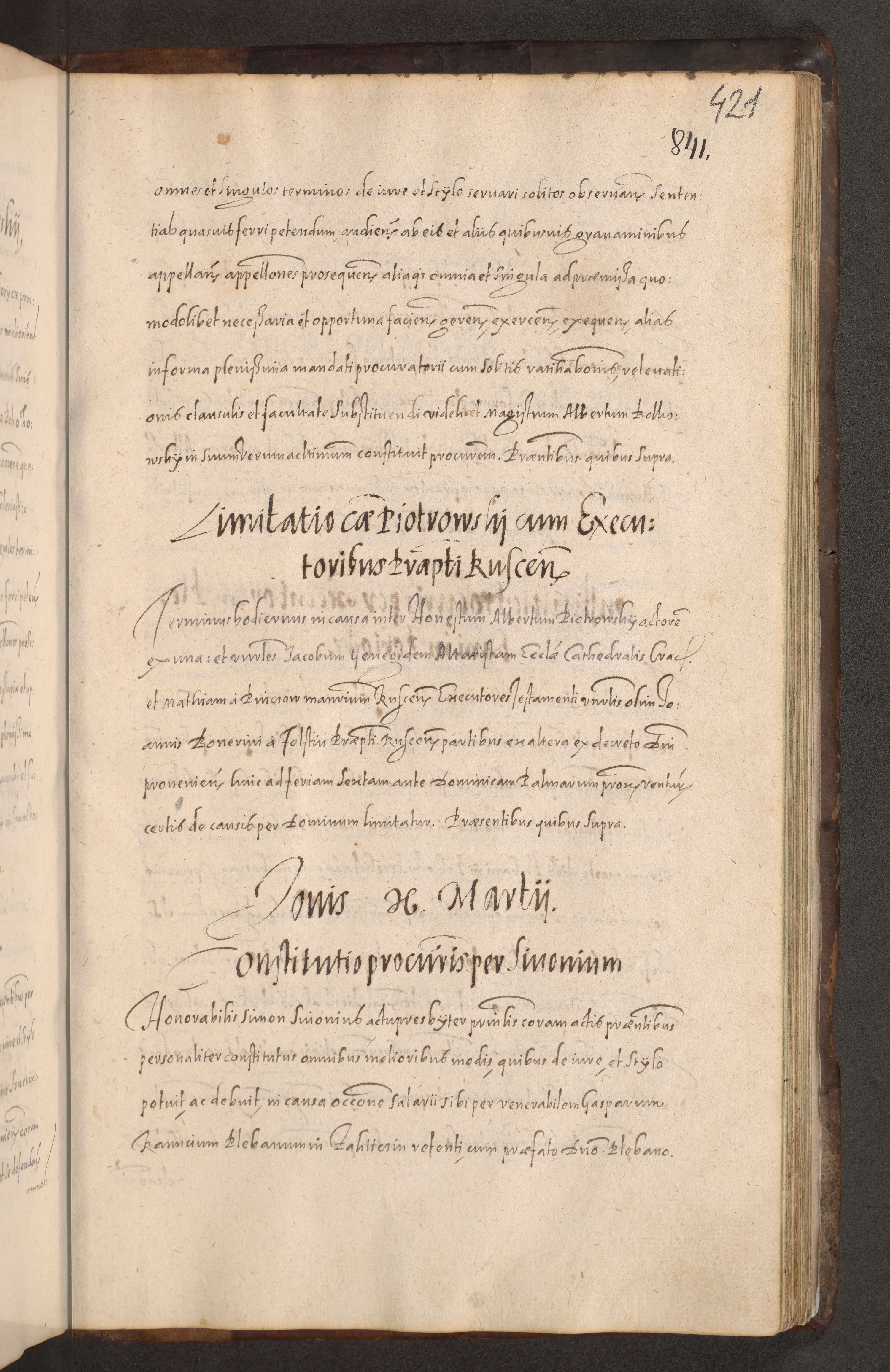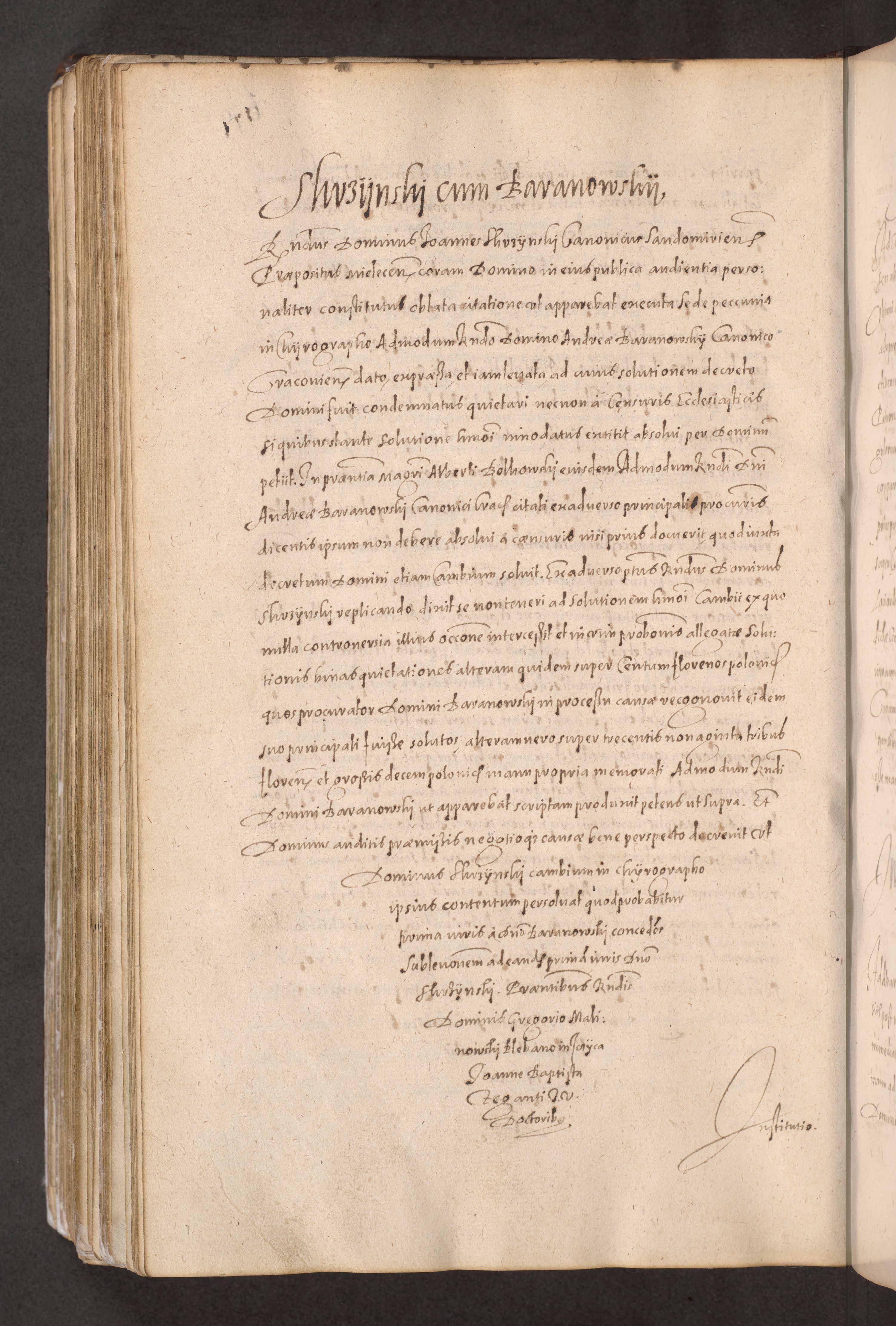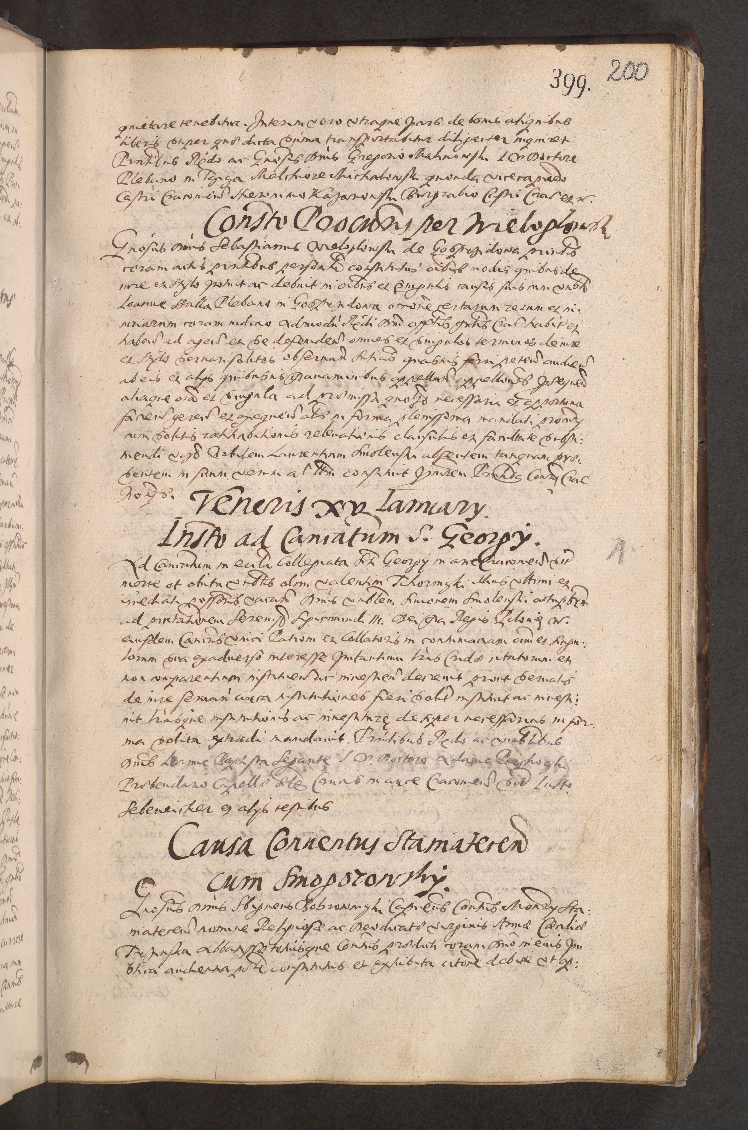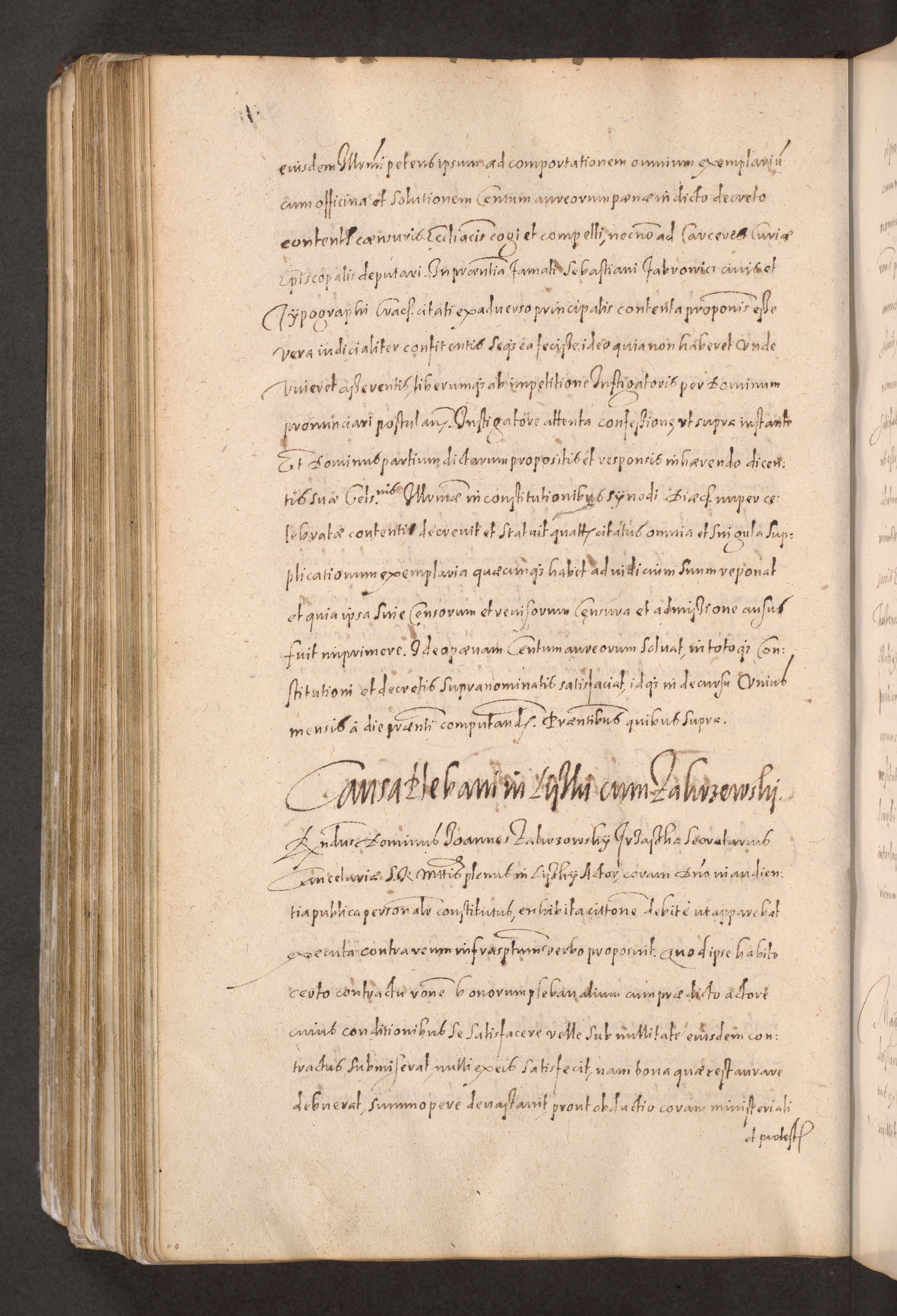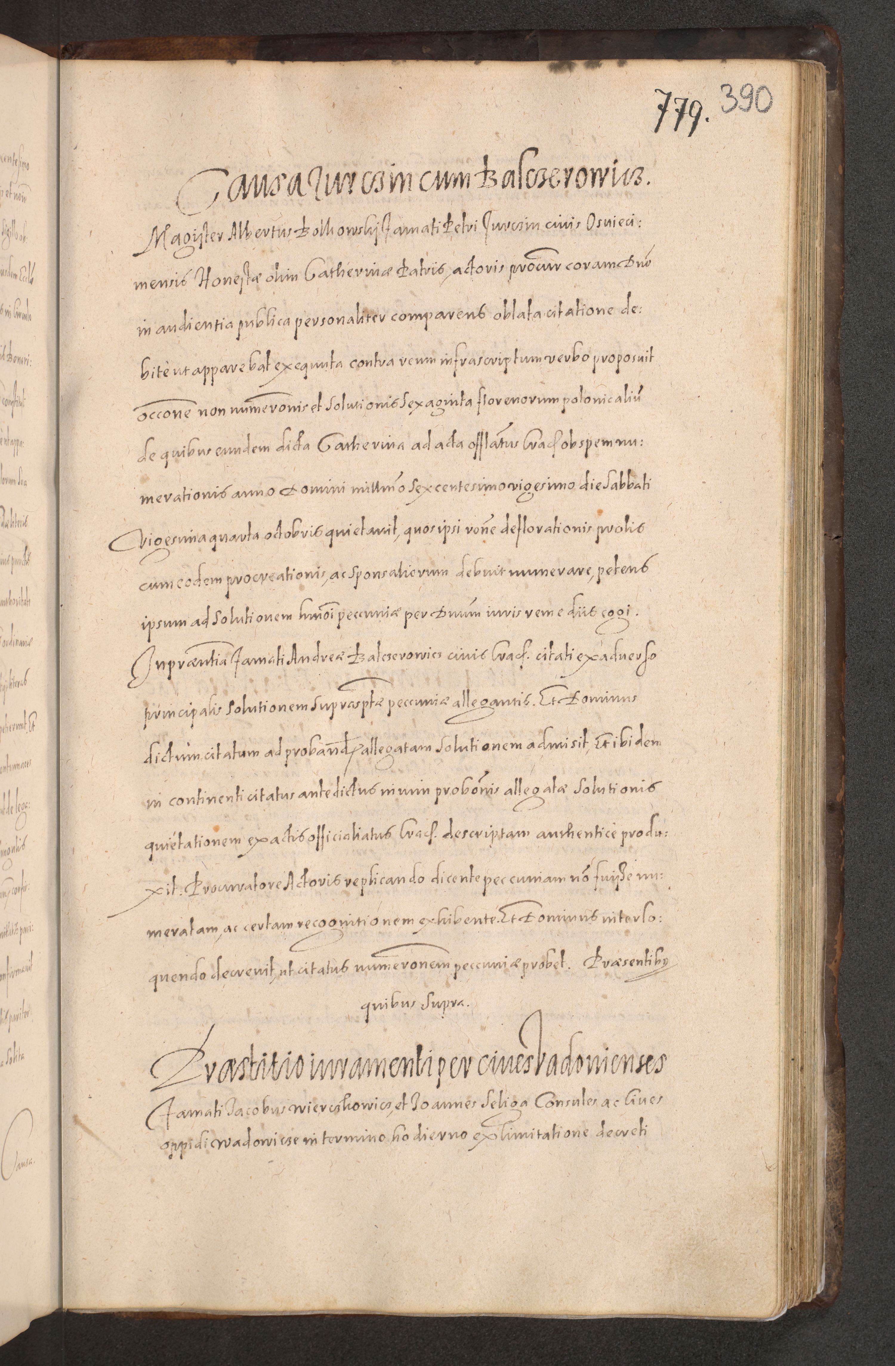 Acta actorum causarum obligationum institutionum decretorum constitutionum quietationum resignationum cissionum et atiaru obsernationum tam indiciariarum quam extra indiciariarum coram Admodum Reverendo Domino Joanne Zerzynski Canonico Vicario in Spiritualibus et Officiali generali Cracoviensis ad Annum Domini Millesimum Sextentissimum Vigesimum Indictione tertia Pontificatus SSmi D. N. D. Pauli Divina pronidentia Papae V. foeliciter moderni anno ipsins subfelici regimine Diocesis Cracoviensis Illustrissimi ac Reverendissimi D. N. D. Martini Szyszkowski Deigratia Episcopus Cracoviensis Ducis Severiensis in continuantur.