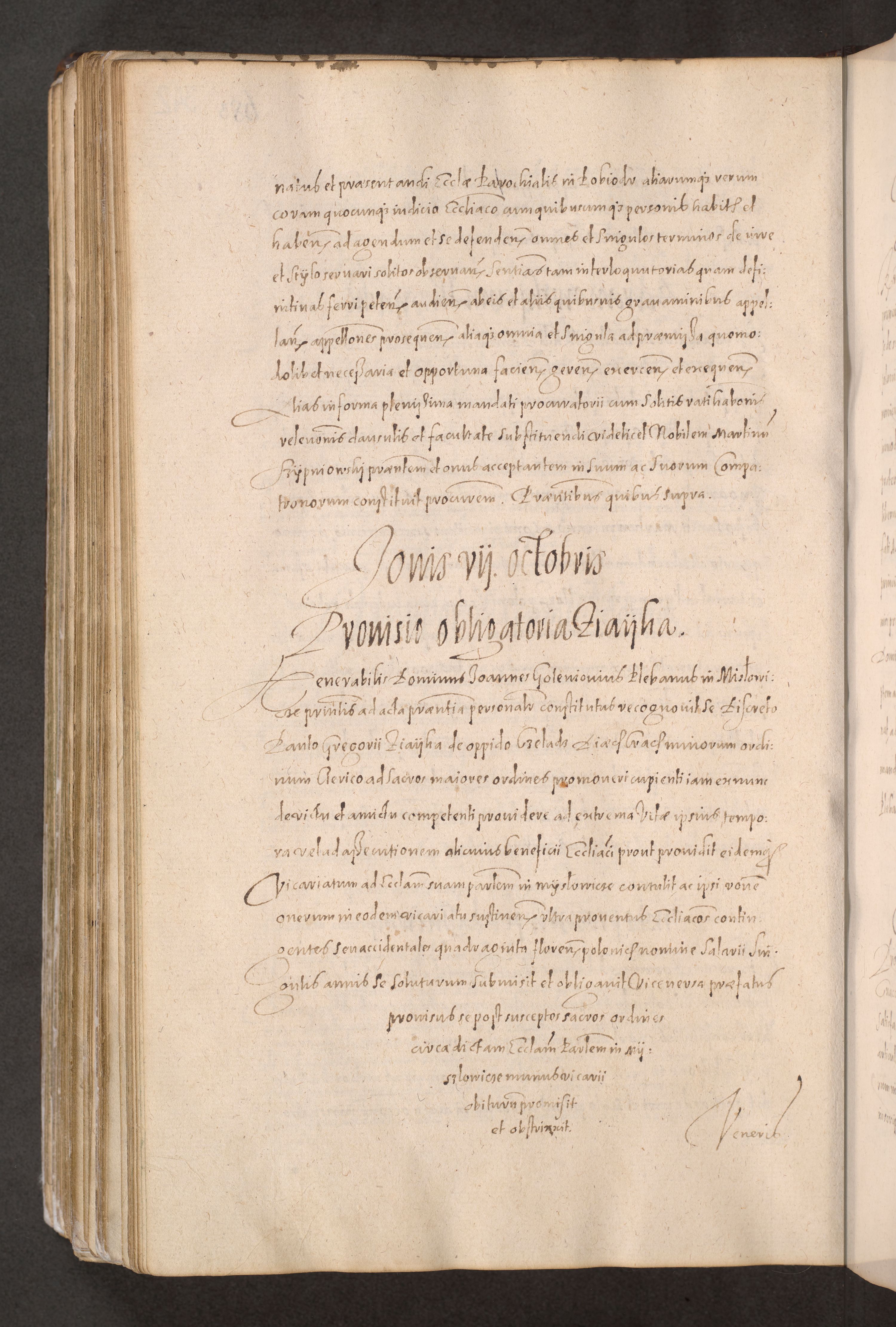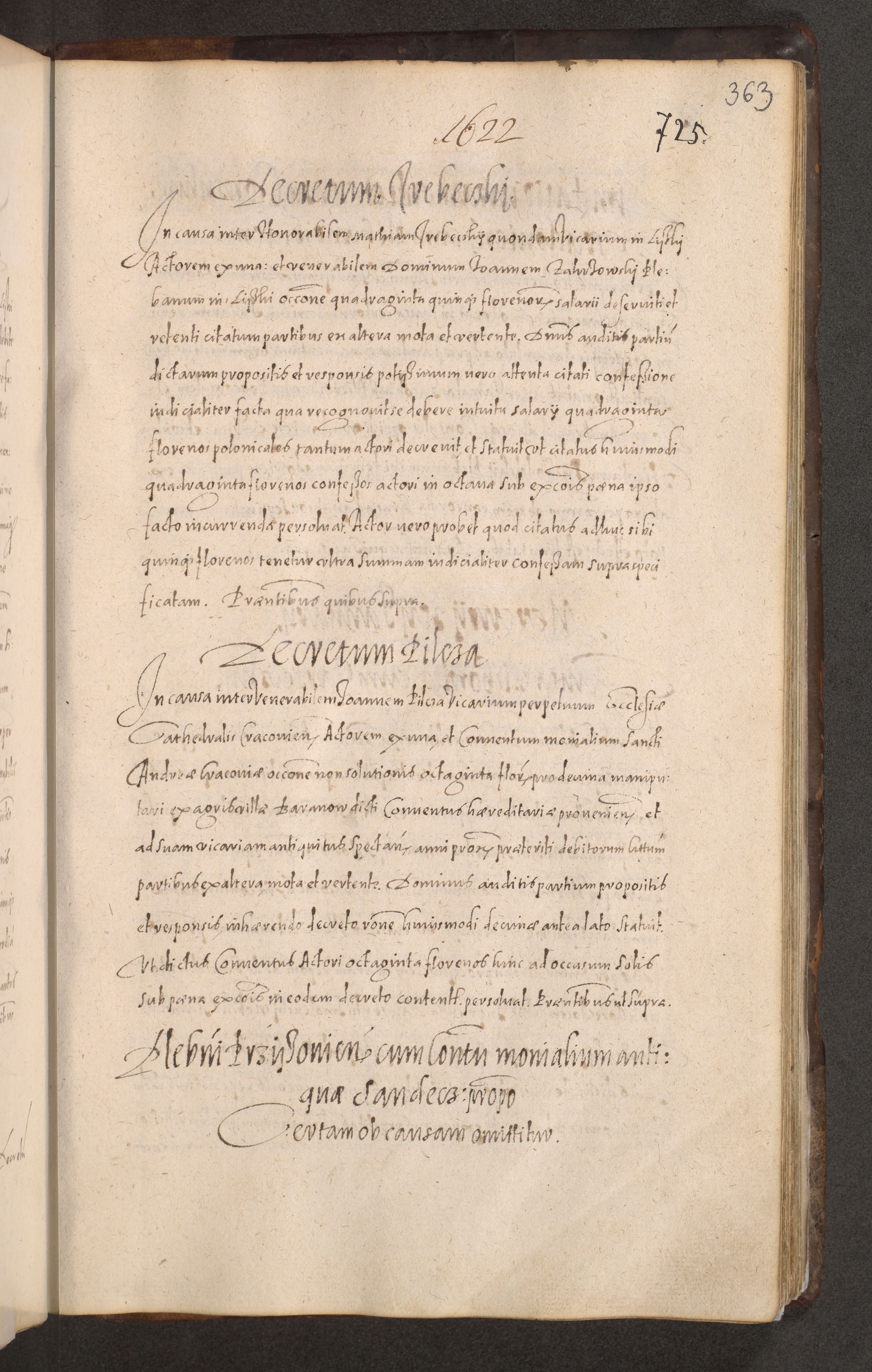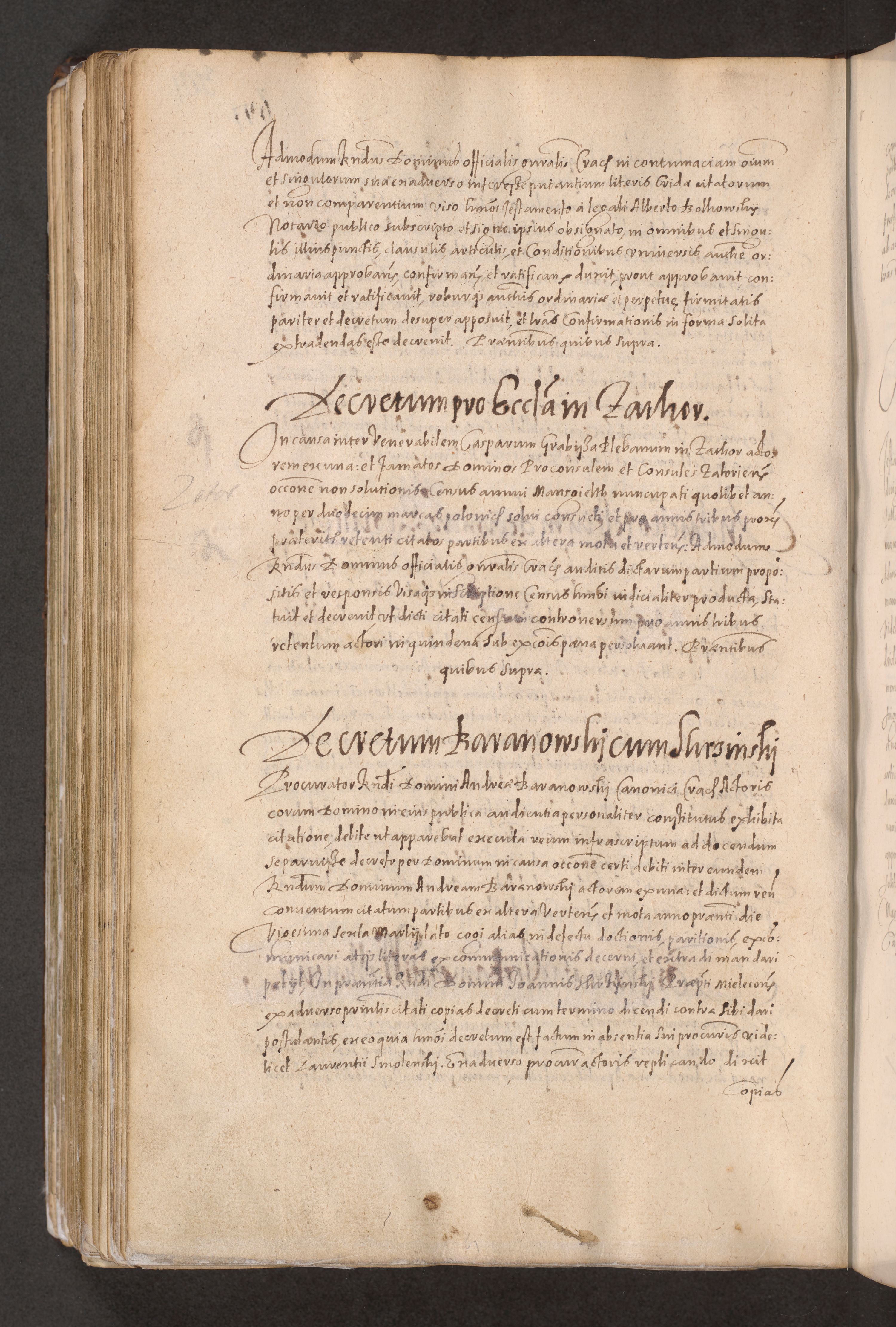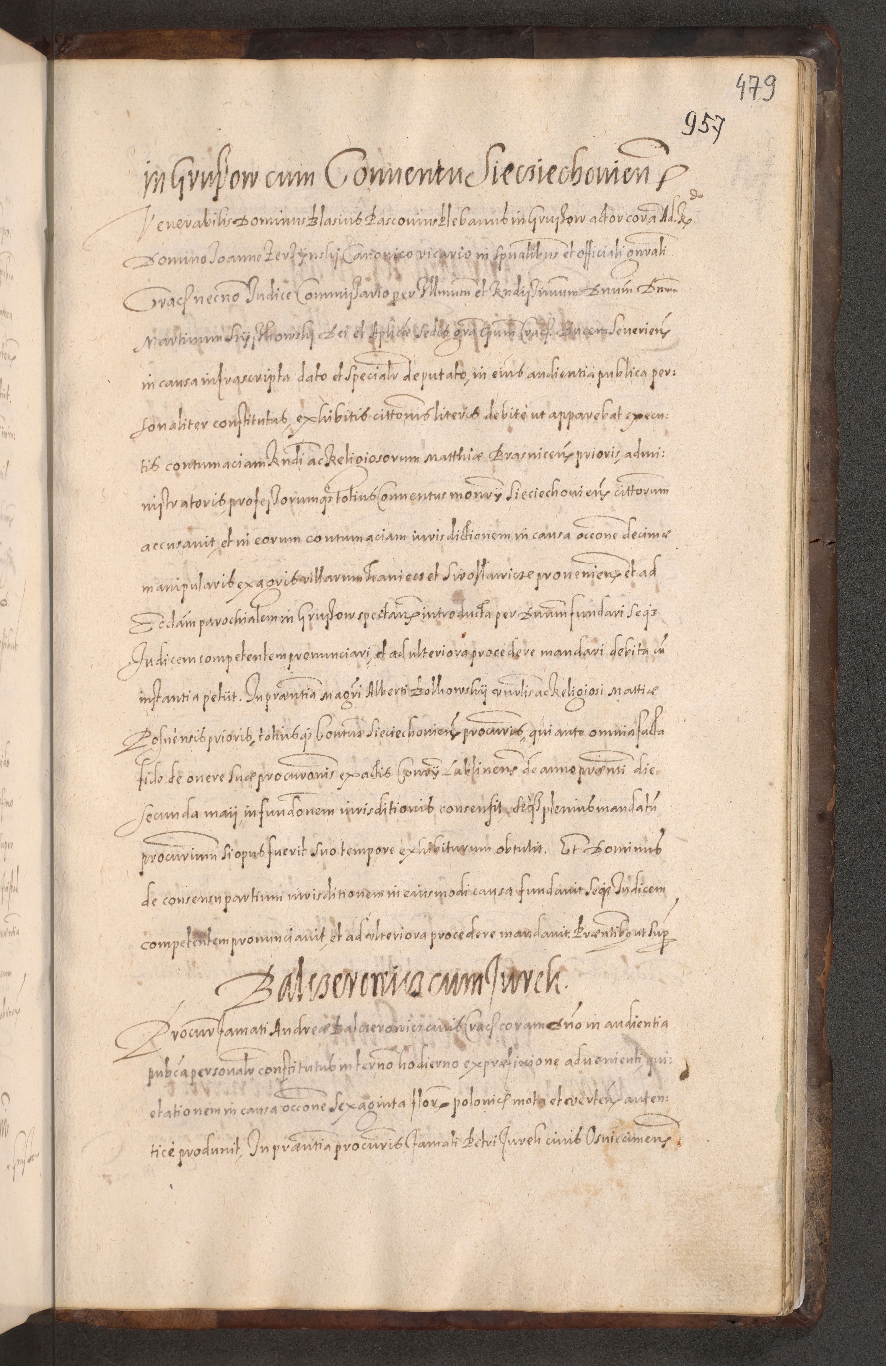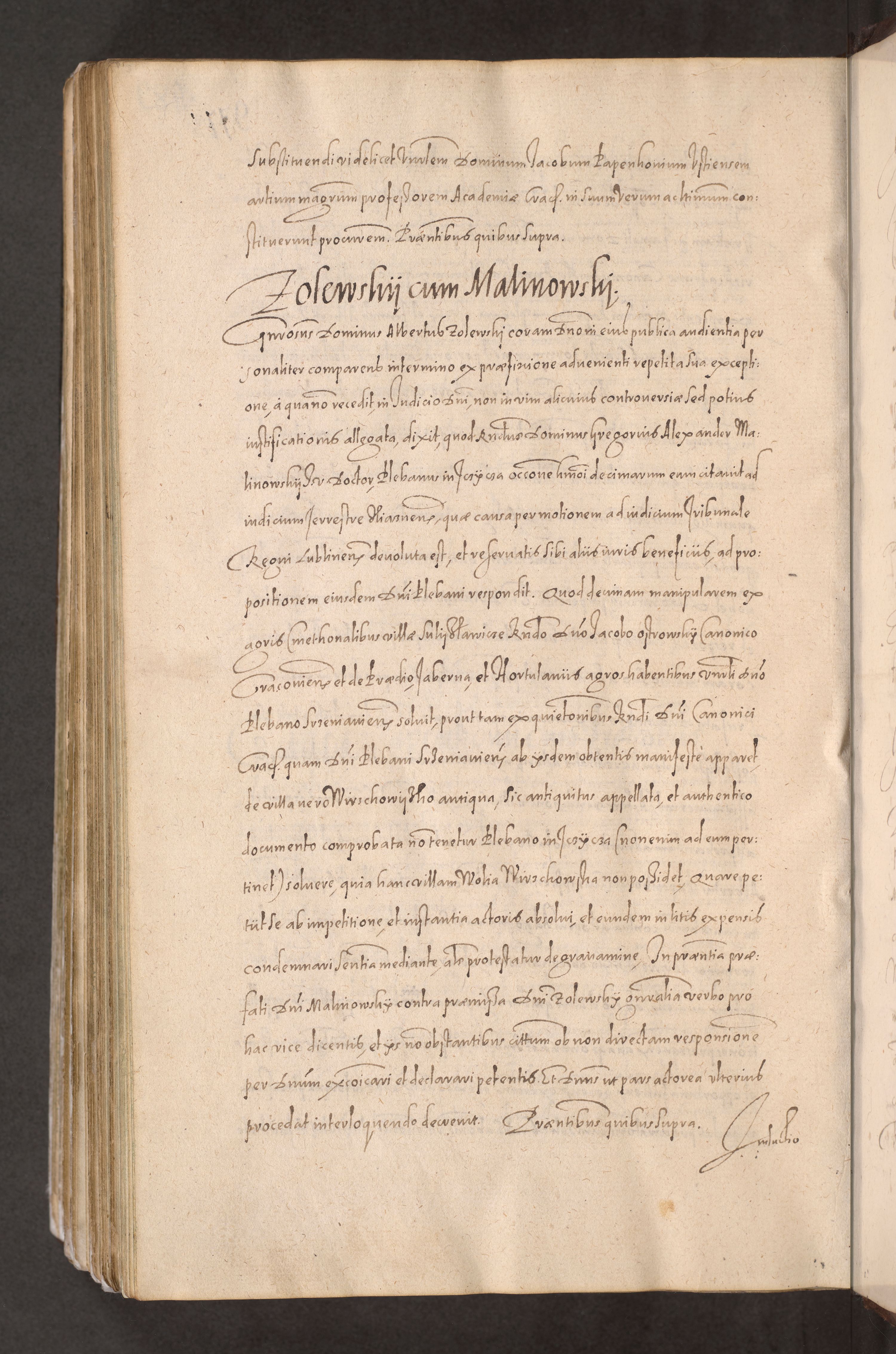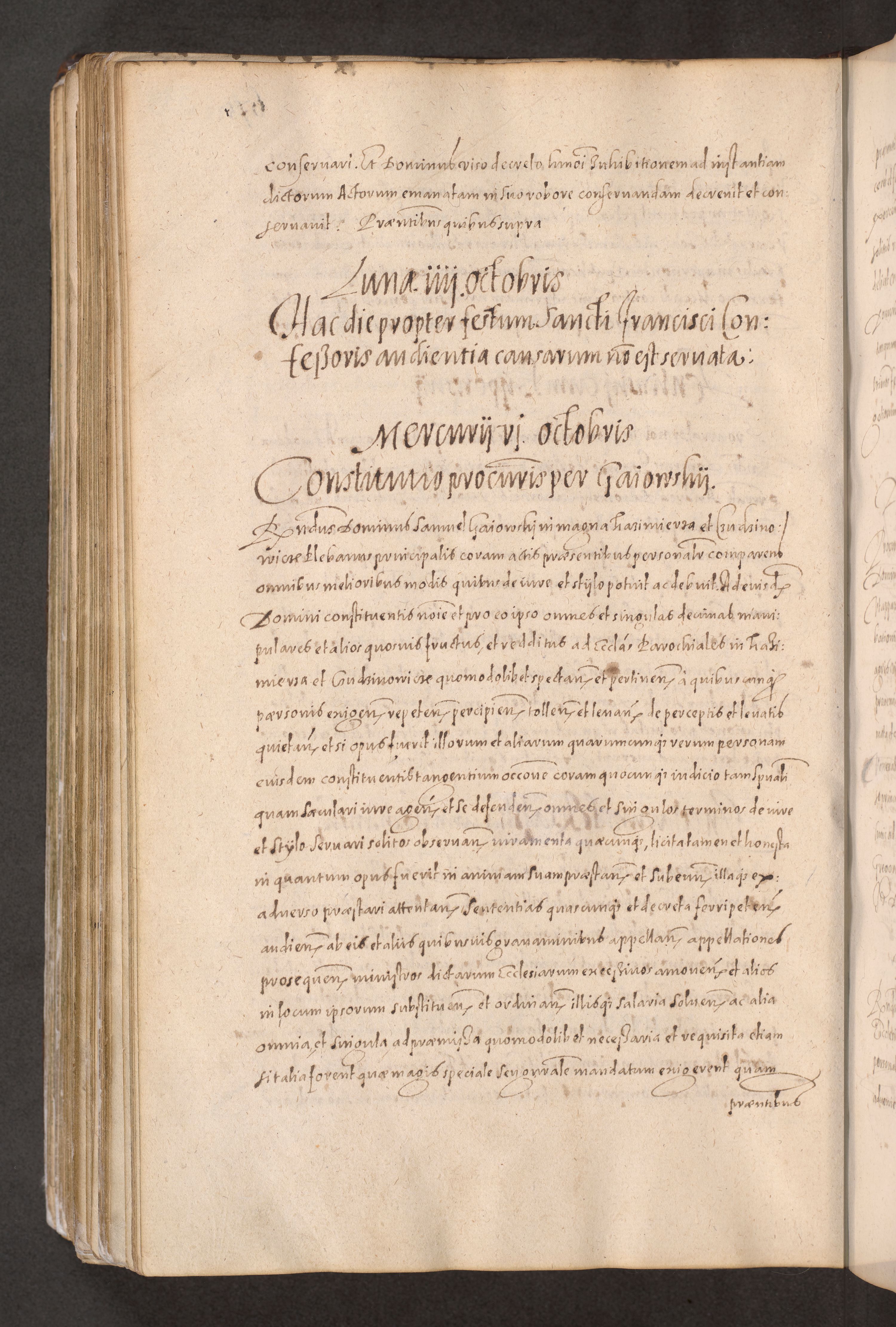 Acta actorum causarum obligationum institutionum decretorum constitutionum quietationum resignationum cissionum et atiaru obsernationum tam indiciariarum quam extra indiciariarum coram Admodum Reverendo Domino Joanne Zerzynski Canonico Vicario in Spiritualibus et Officiali generali Cracoviensis ad Annum Domini Millesimum Sextentissimum Vigesimum Indictione tertia Pontificatus SSmi D. N. D. Pauli Divina pronidentia Papae V. foeliciter moderni anno ipsins subfelici regimine Diocesis Cracoviensis Illustrissimi ac Reverendissimi D. N. D. Martini Szyszkowski Deigratia Episcopus Cracoviensis Ducis Severiensis in continuantur.