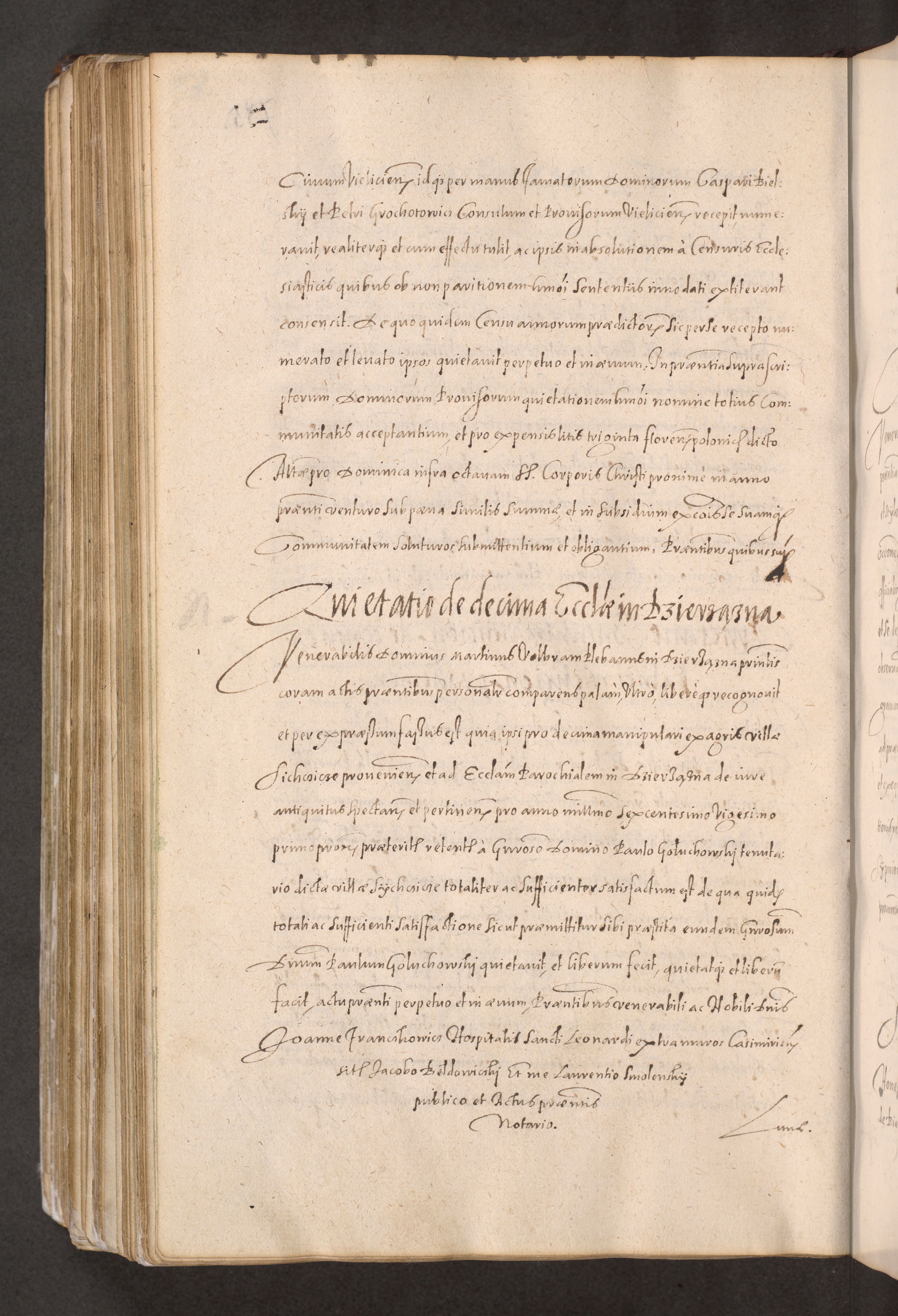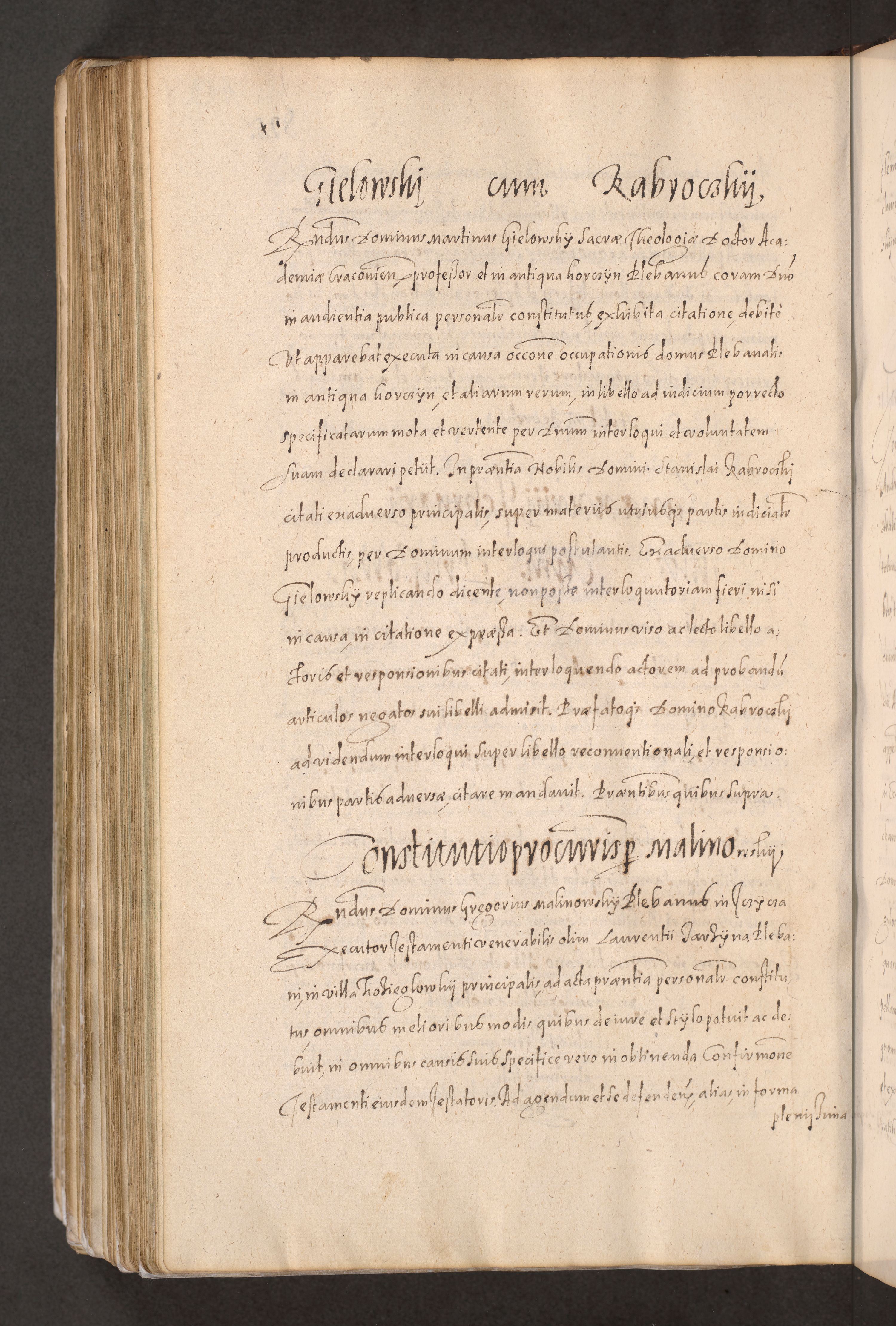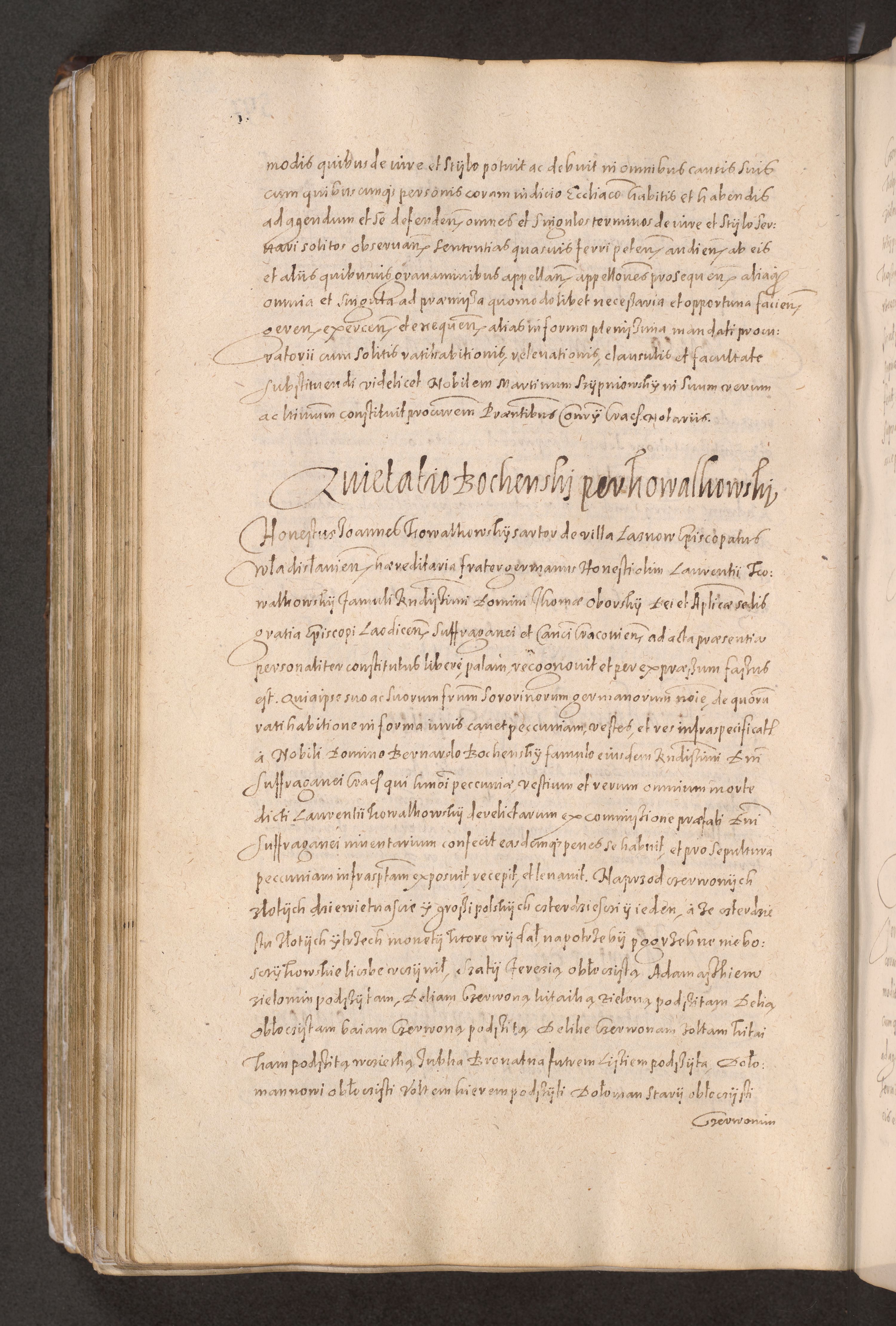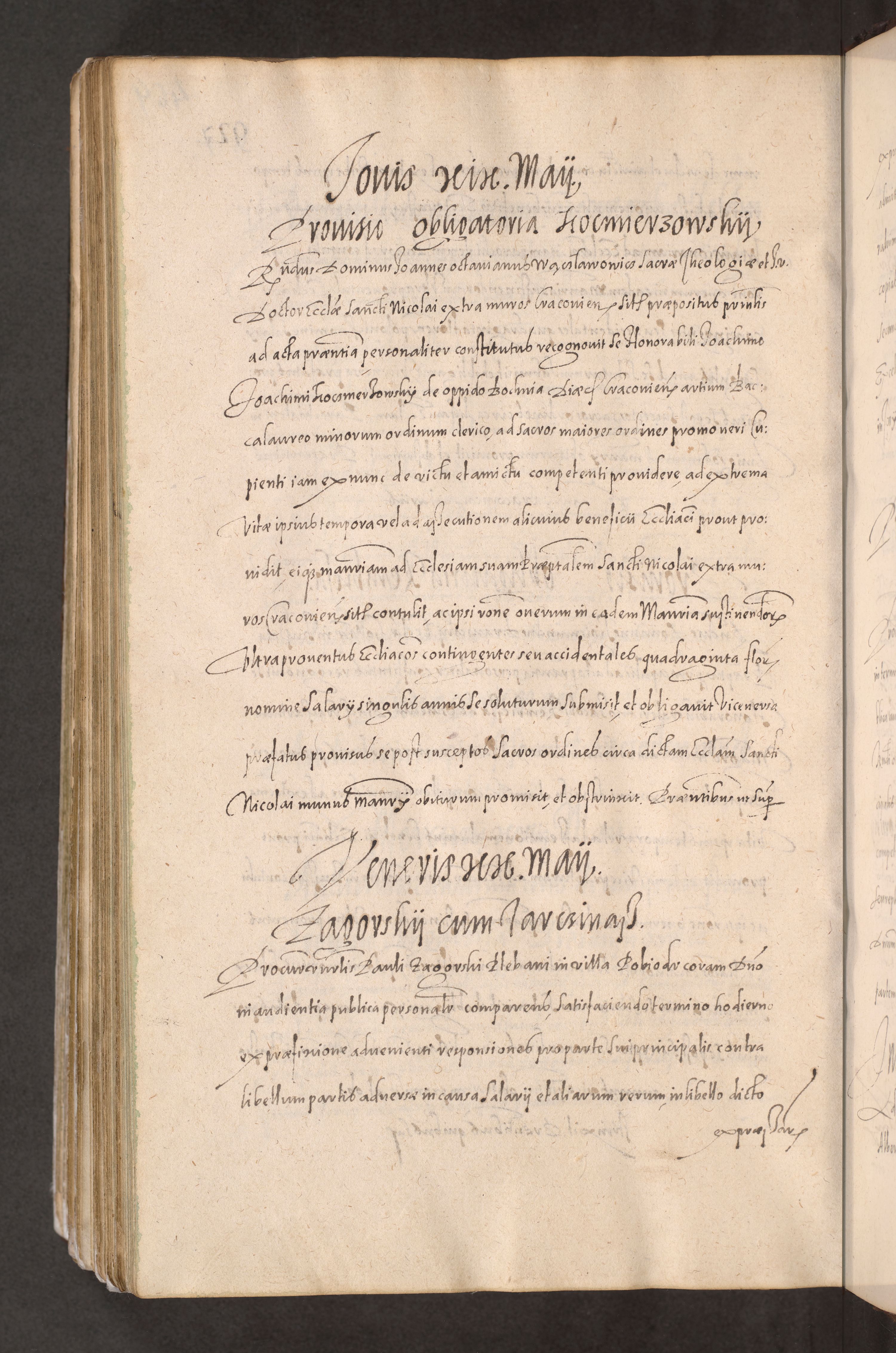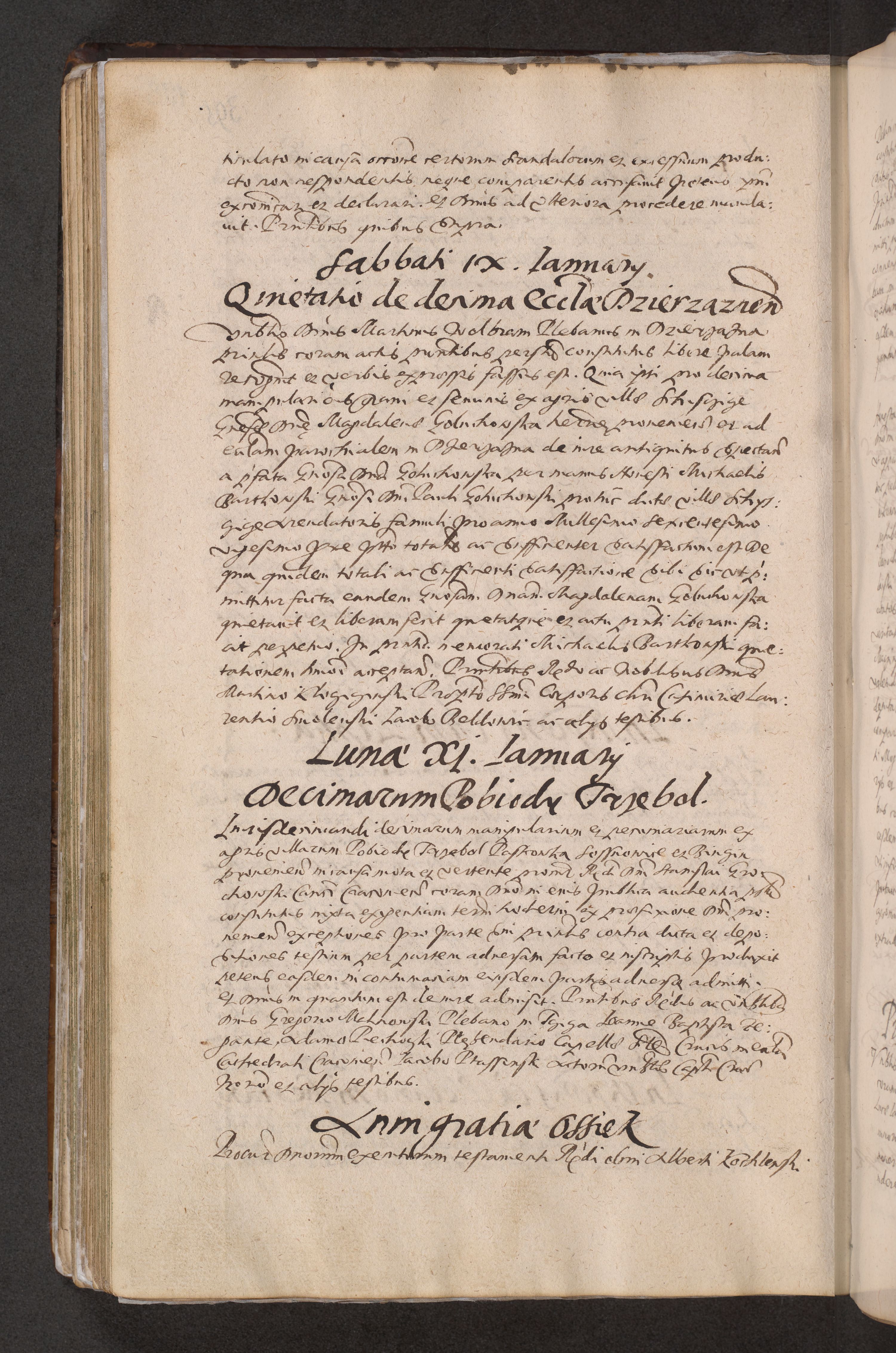 Acta actorum causarum obligationum institutionum decretorum constitutionum quietationum resignationum cissionum et atiaru obsernationum tam indiciariarum quam extra indiciariarum coram Admodum Reverendo Domino Joanne Zerzynski Canonico Vicario in Spiritualibus et Officiali generali Cracoviensis ad Annum Domini Millesimum Sextentissimum Vigesimum Indictione tertia Pontificatus SSmi D. N. D. Pauli Divina pronidentia Papae V. foeliciter moderni anno ipsins subfelici regimine Diocesis Cracoviensis Illustrissimi ac Reverendissimi D. N. D. Martini Szyszkowski Deigratia Episcopus Cracoviensis Ducis Severiensis in continuantur.