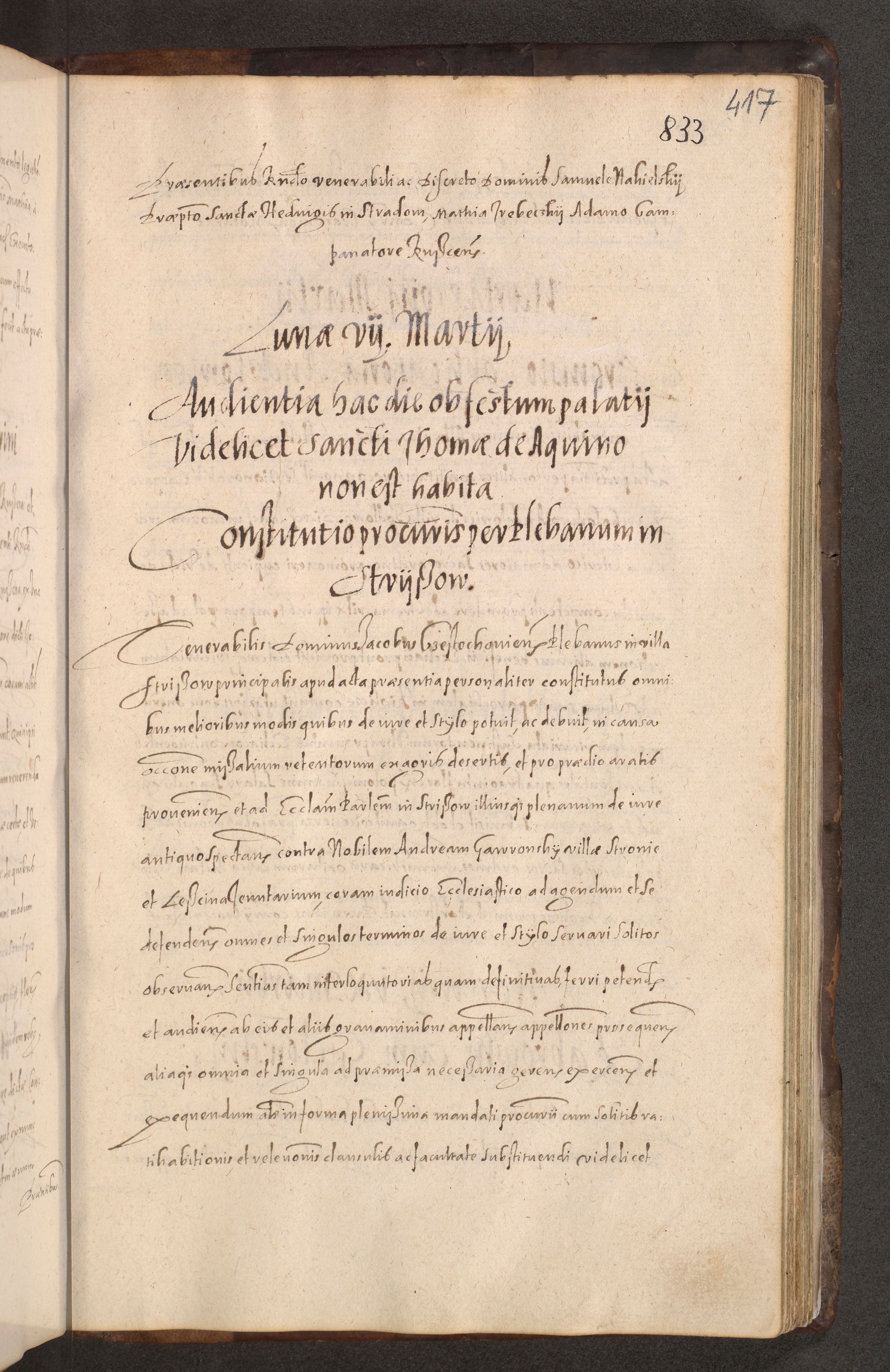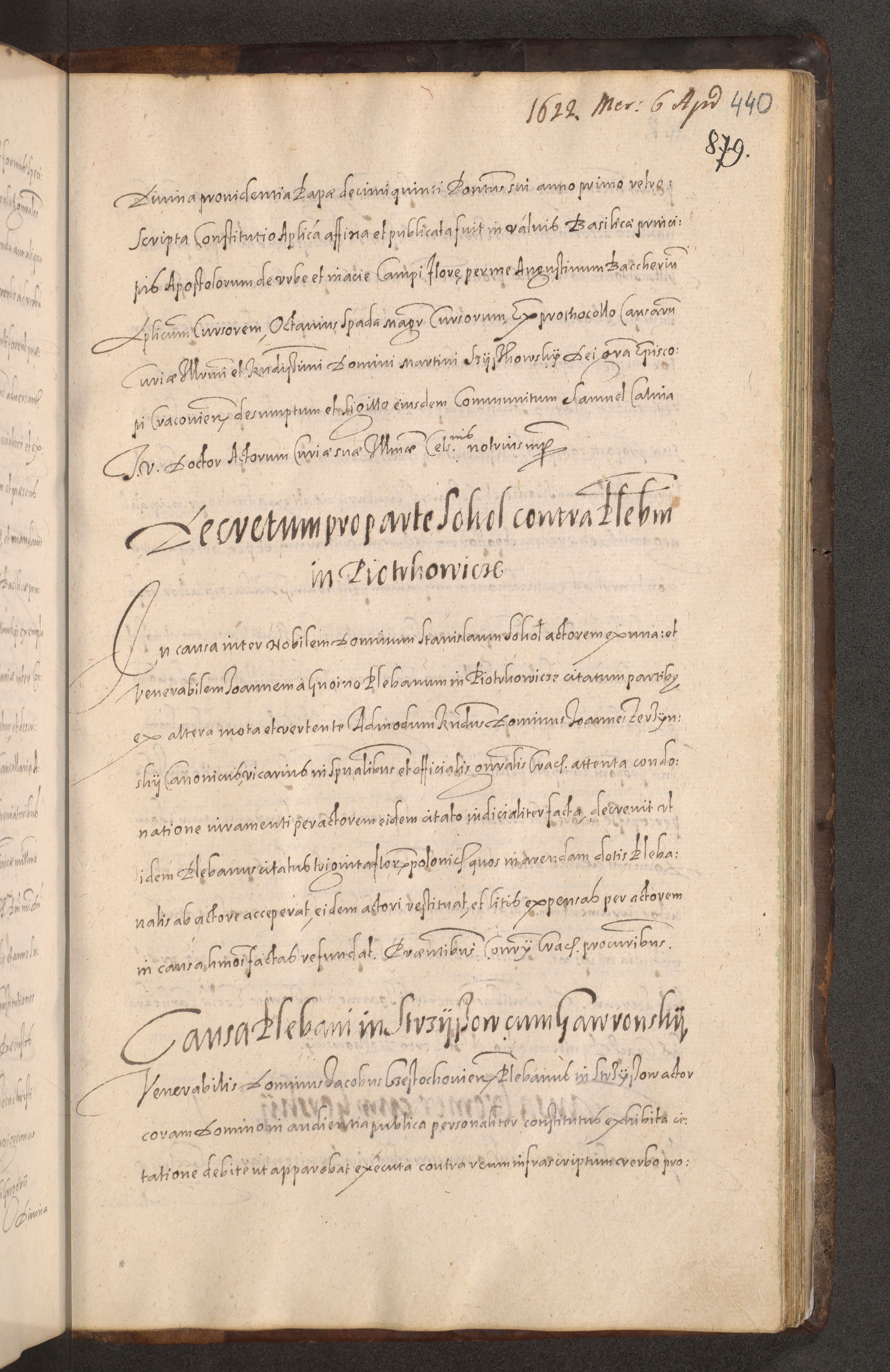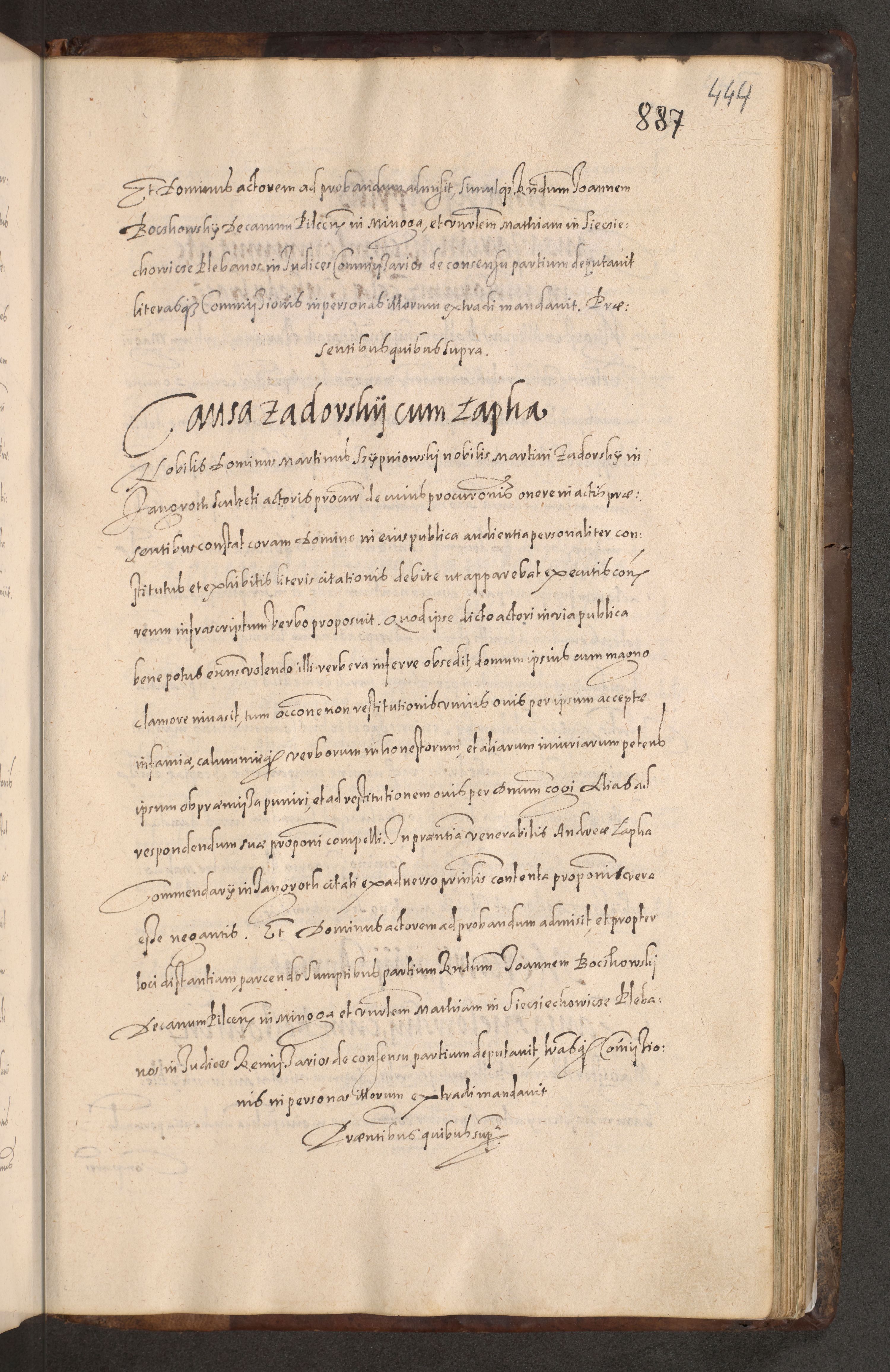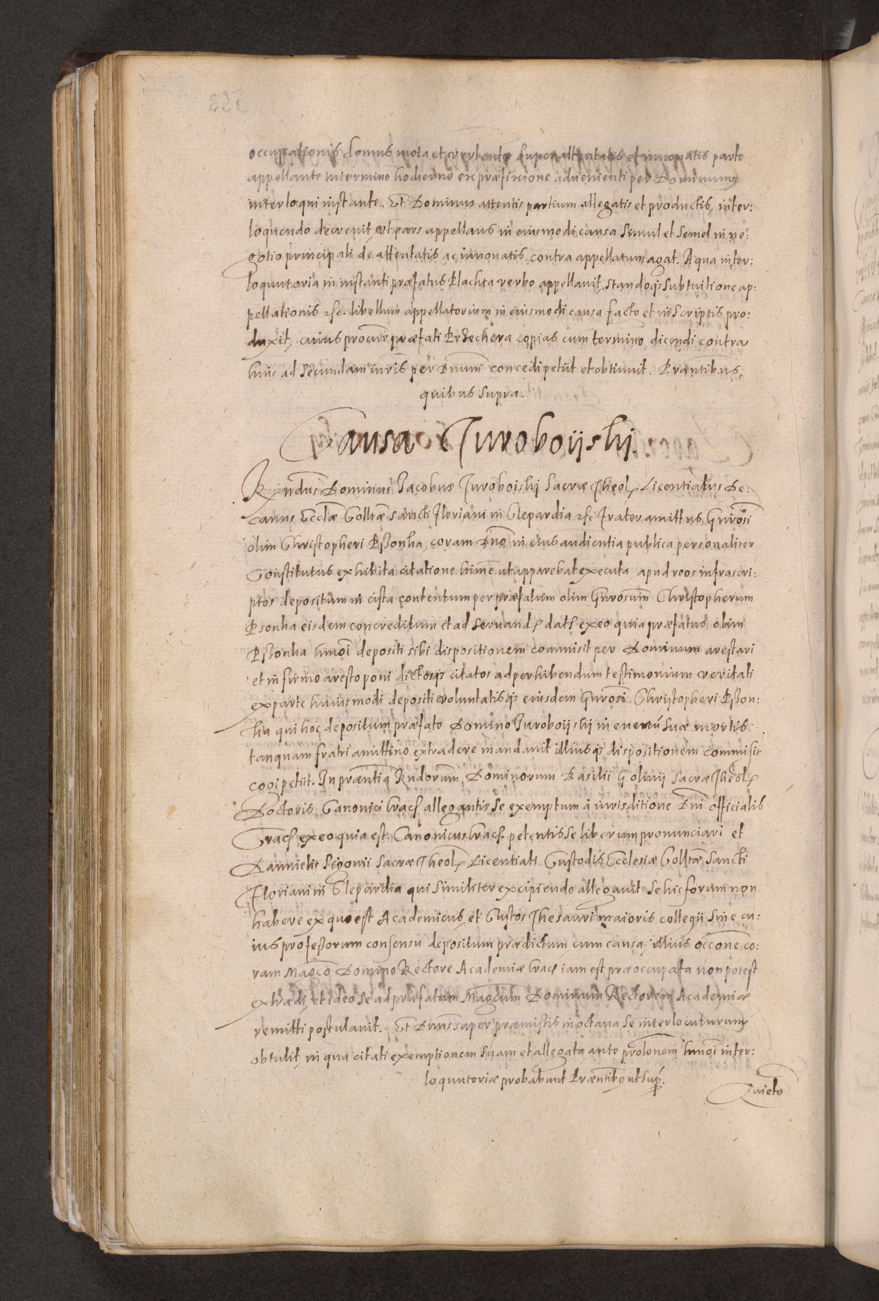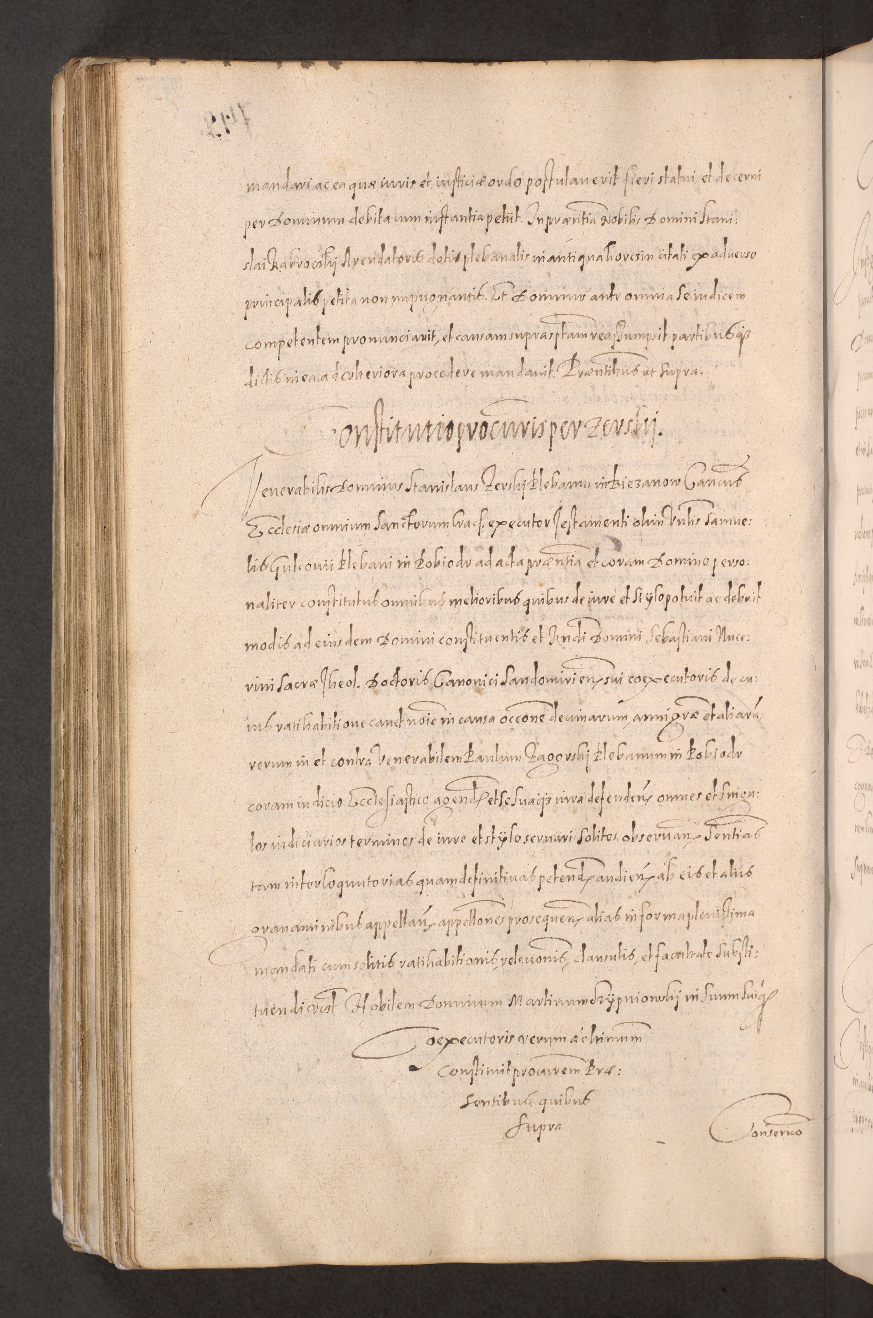 Acta actorum causarum obligationum institutionum decretorum constitutionum quietationum resignationum cissionum et atiaru obsernationum tam indiciariarum quam extra indiciariarum coram Admodum Reverendo Domino Joanne Zerzynski Canonico Vicario in Spiritualibus et Officiali generali Cracoviensis ad Annum Domini Millesimum Sextentissimum Vigesimum Indictione tertia Pontificatus SSmi D. N. D. Pauli Divina pronidentia Papae V. foeliciter moderni anno ipsins subfelici regimine Diocesis Cracoviensis Illustrissimi ac Reverendissimi D. N. D. Martini Szyszkowski Deigratia Episcopus Cracoviensis Ducis Severiensis in continuantur.