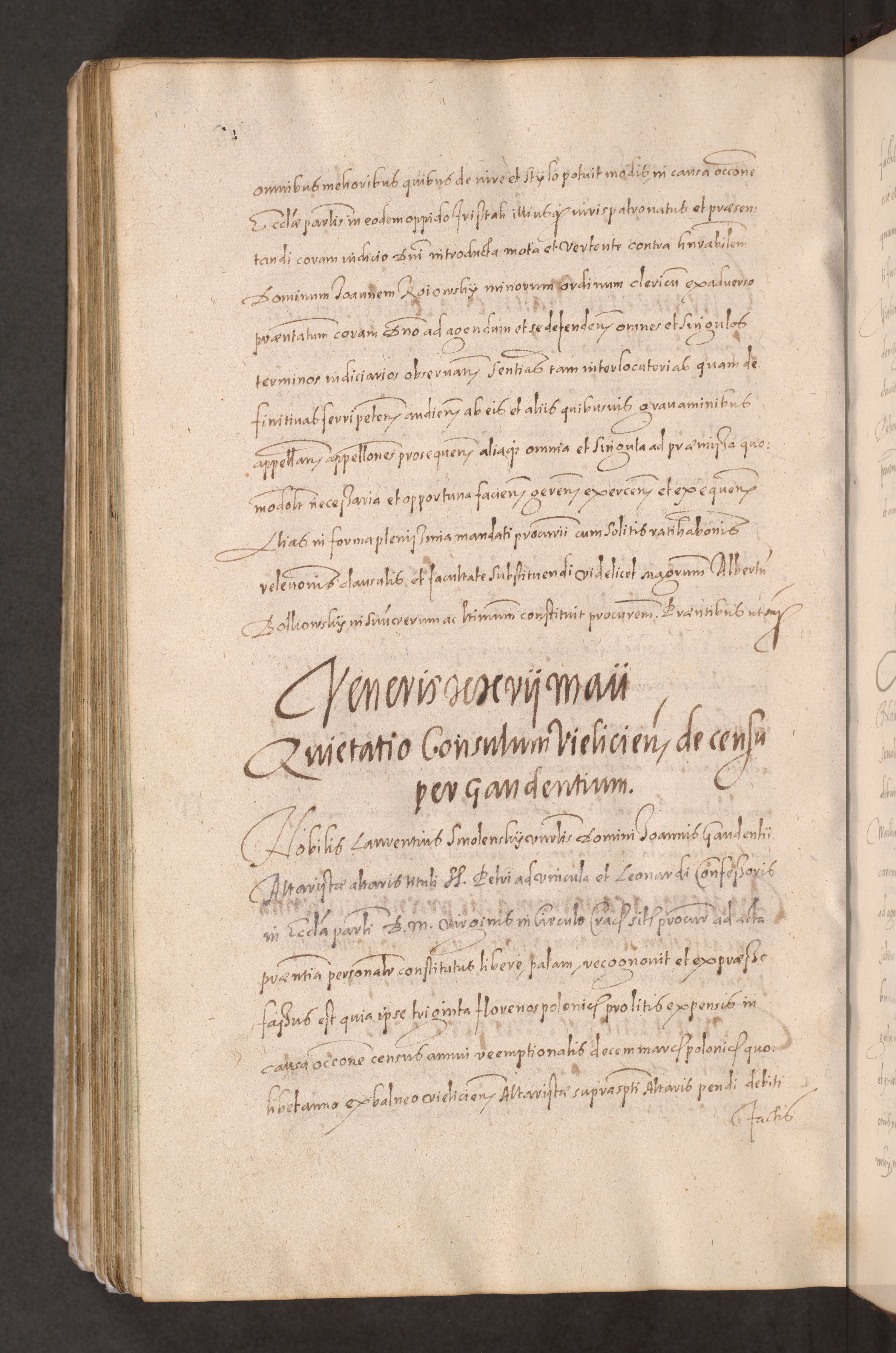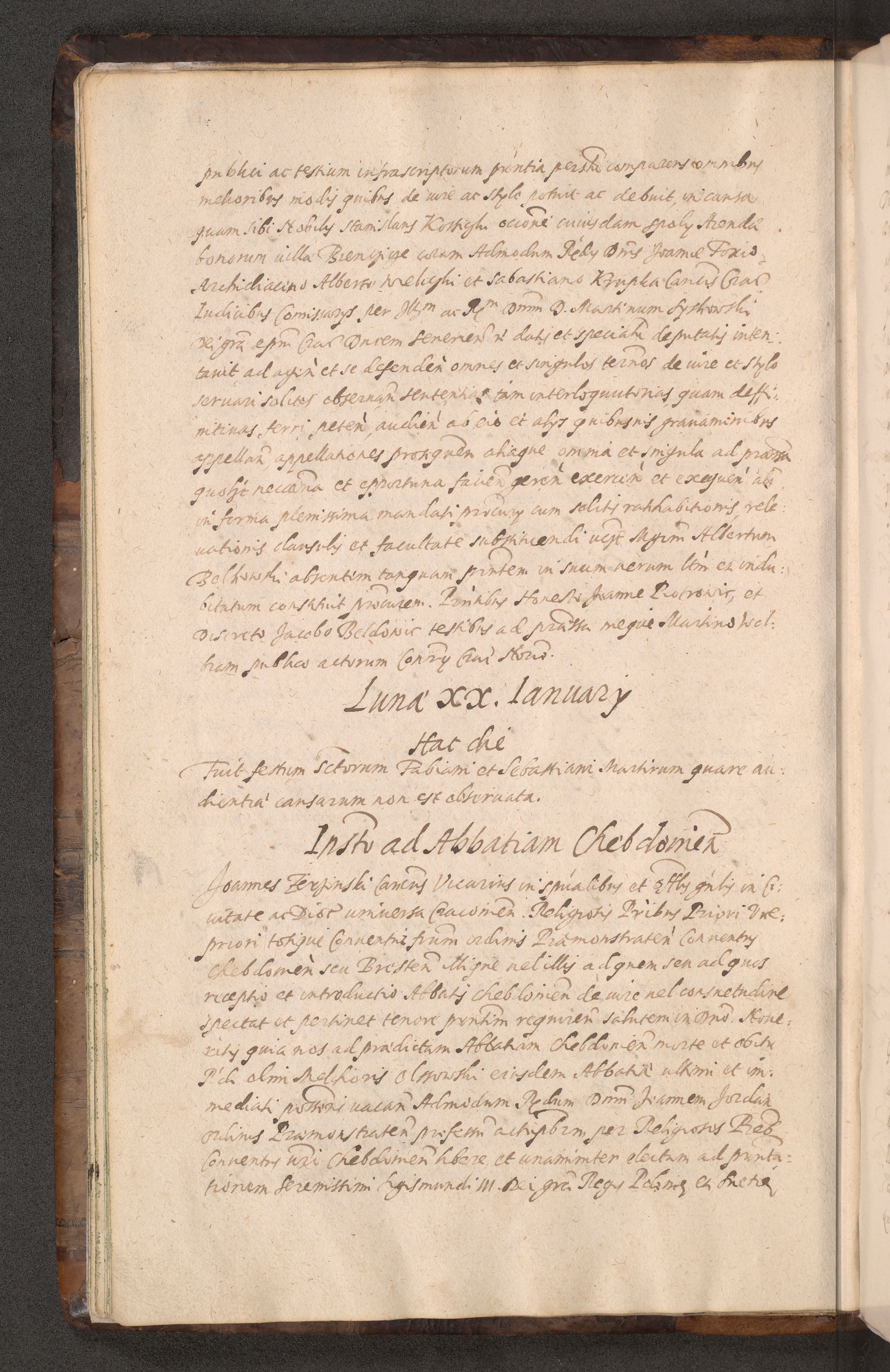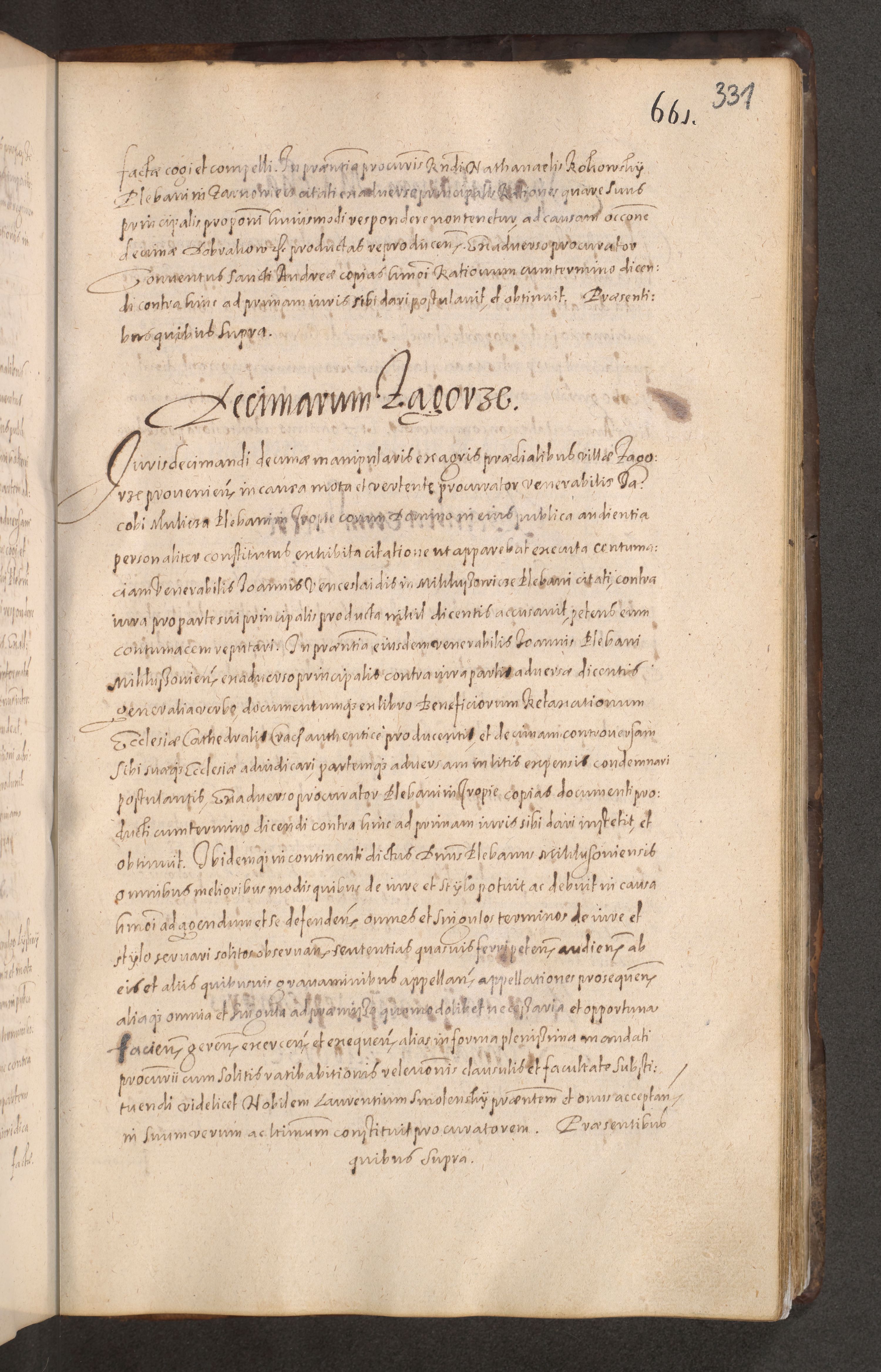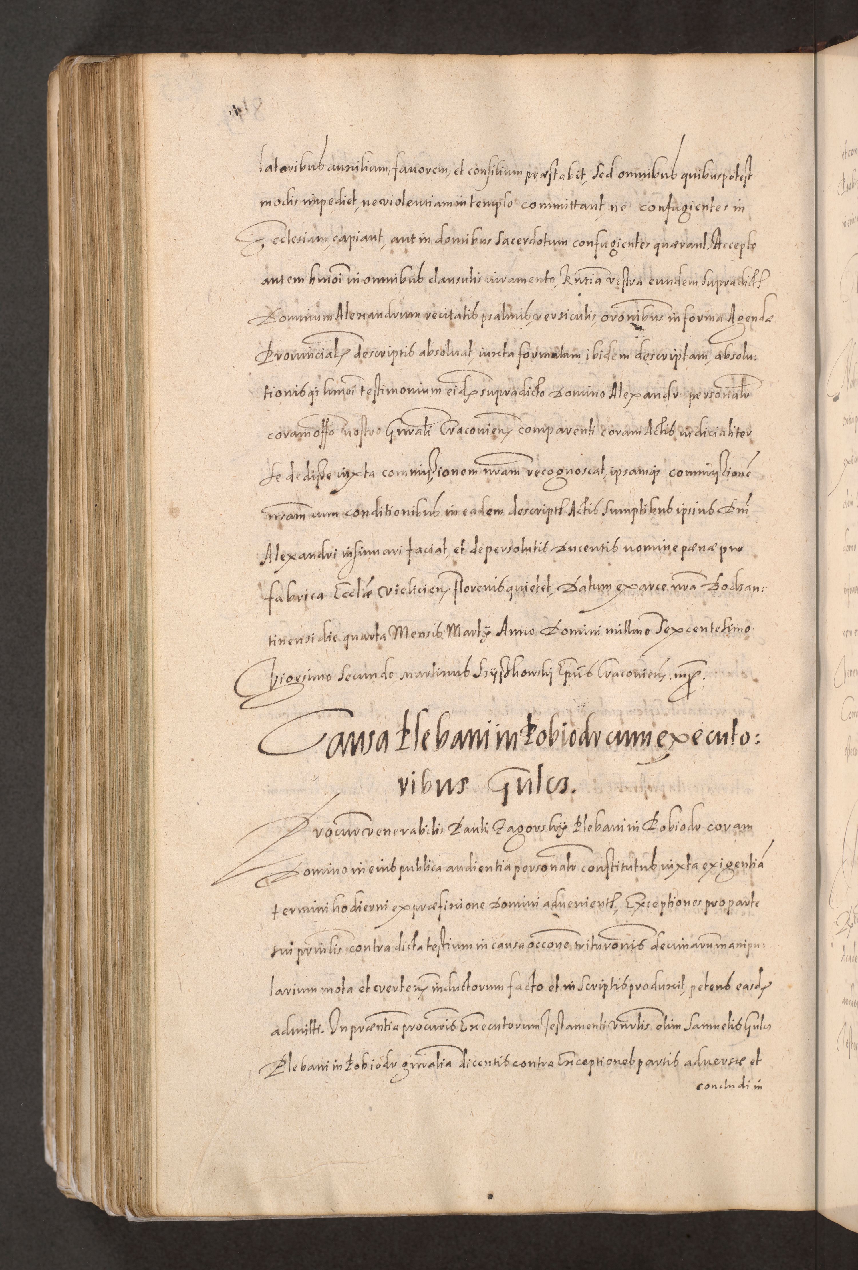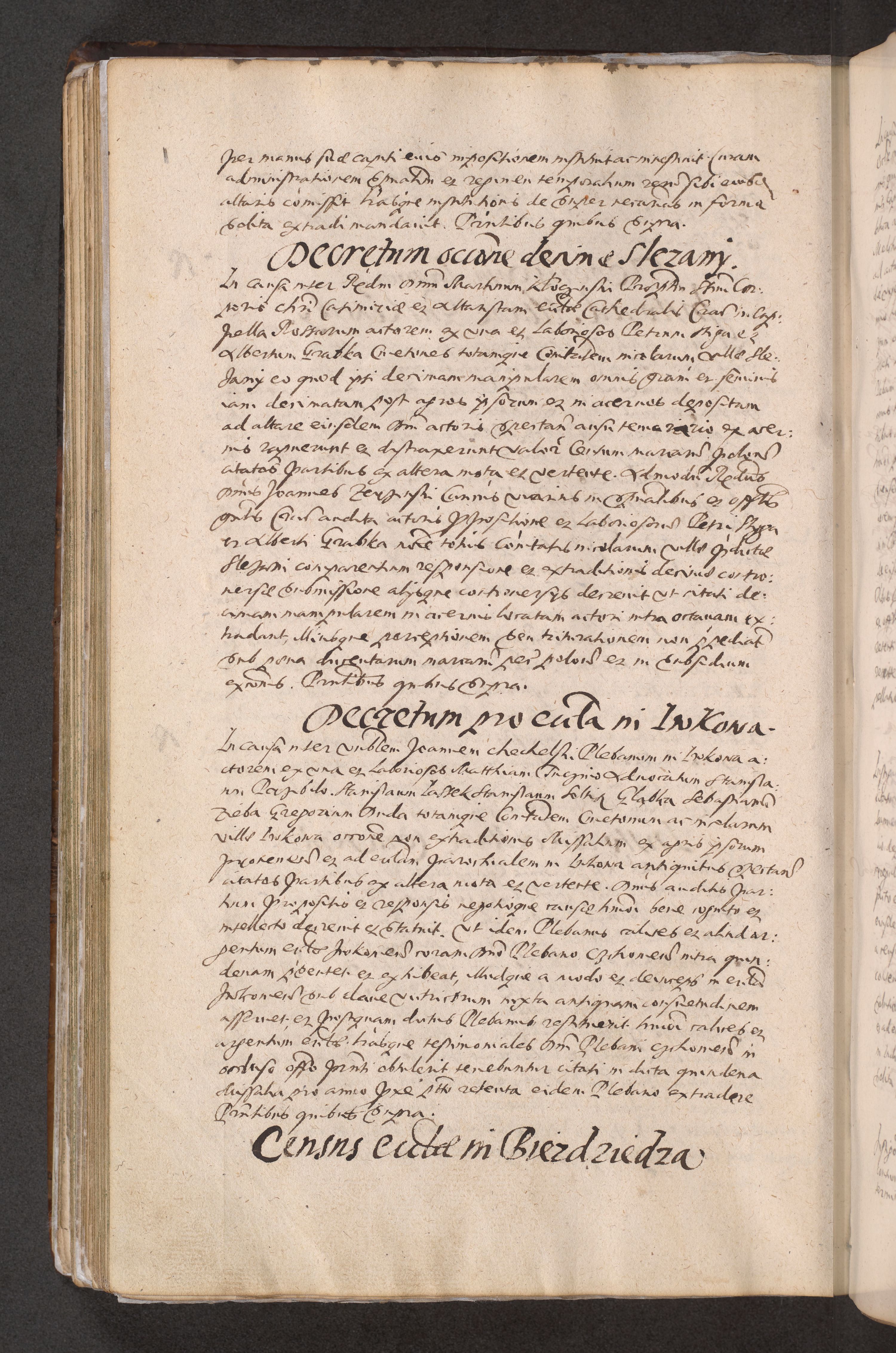 Acta actorum causarum obligationum institutionum decretorum constitutionum quietationum resignationum cissionum et atiaru obsernationum tam indiciariarum quam extra indiciariarum coram Admodum Reverendo Domino Joanne Zerzynski Canonico Vicario in Spiritualibus et Officiali generali Cracoviensis ad Annum Domini Millesimum Sextentissimum Vigesimum Indictione tertia Pontificatus SSmi D. N. D. Pauli Divina pronidentia Papae V. foeliciter moderni anno ipsins subfelici regimine Diocesis Cracoviensis Illustrissimi ac Reverendissimi D. N. D. Martini Szyszkowski Deigratia Episcopus Cracoviensis Ducis Severiensis in continuantur.