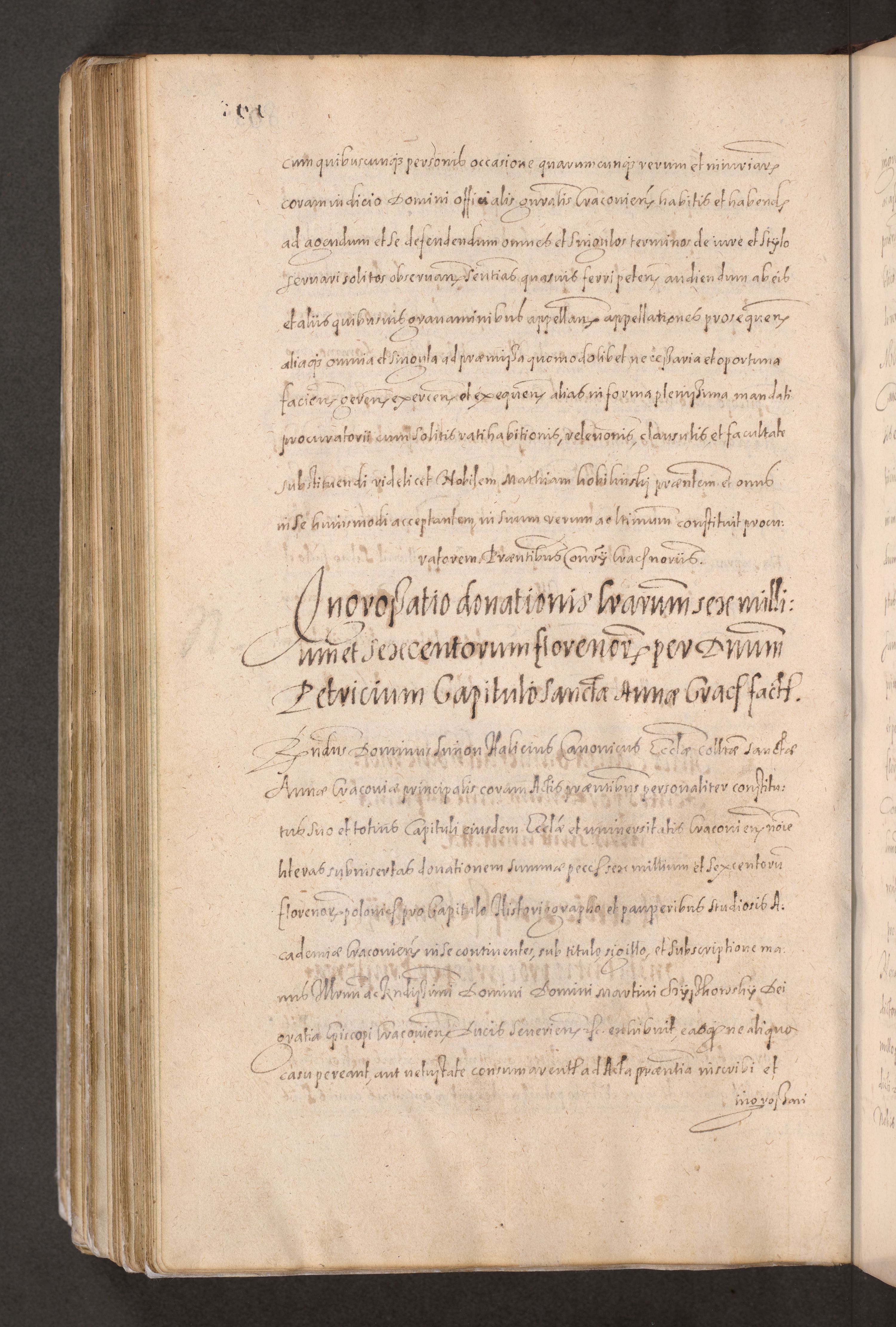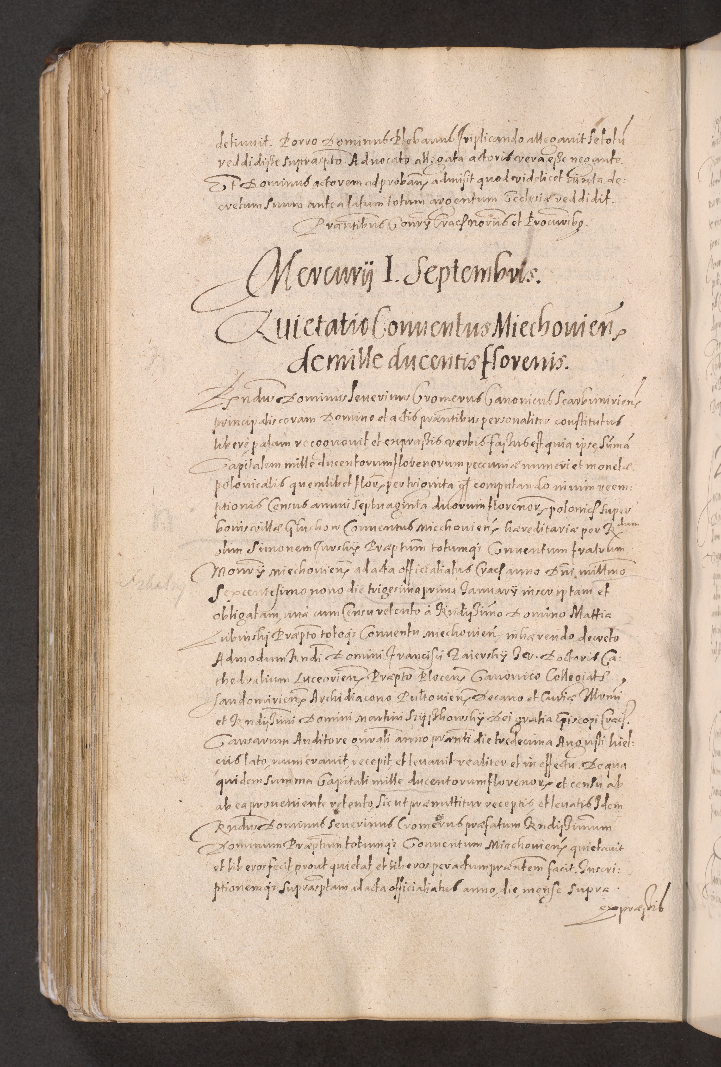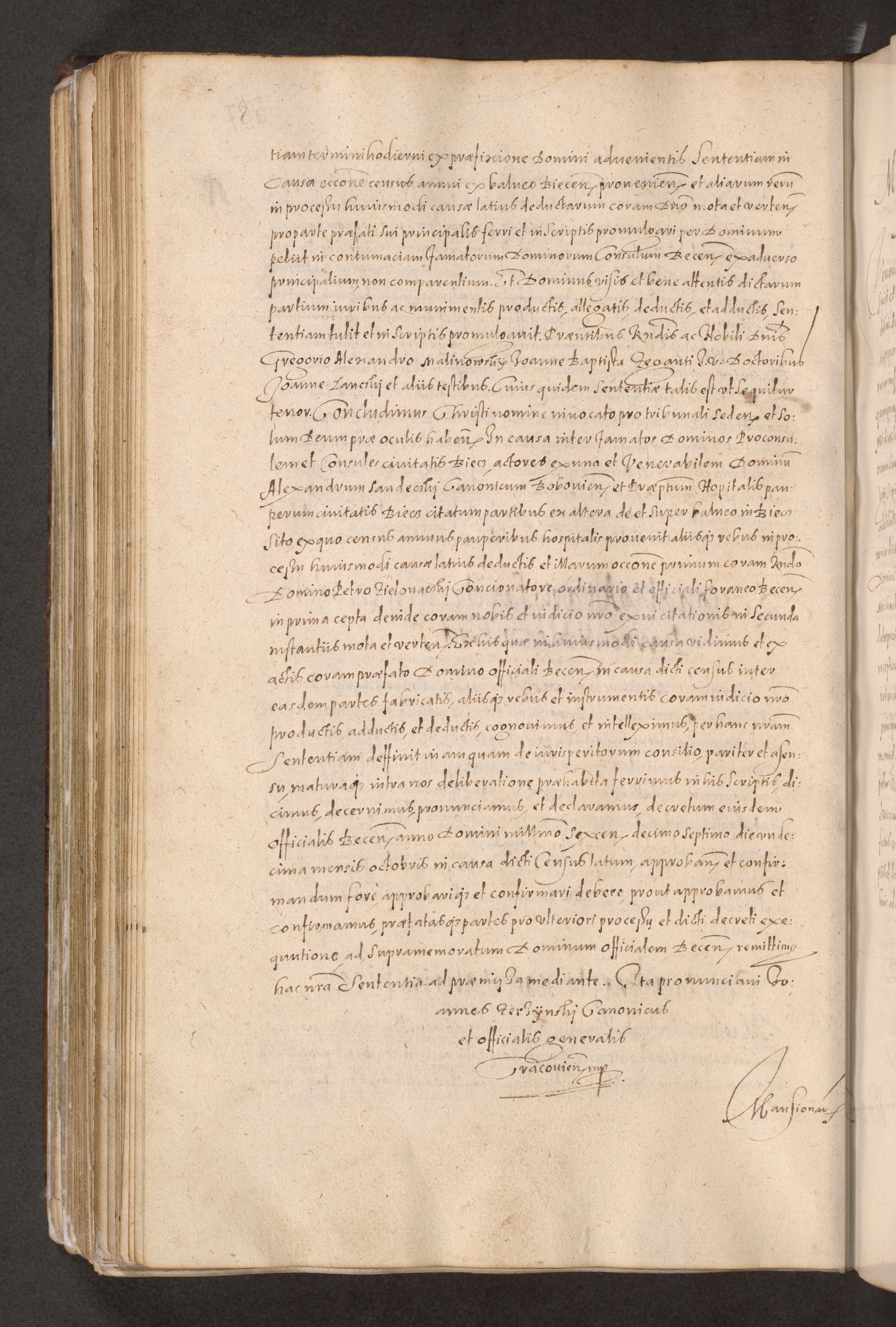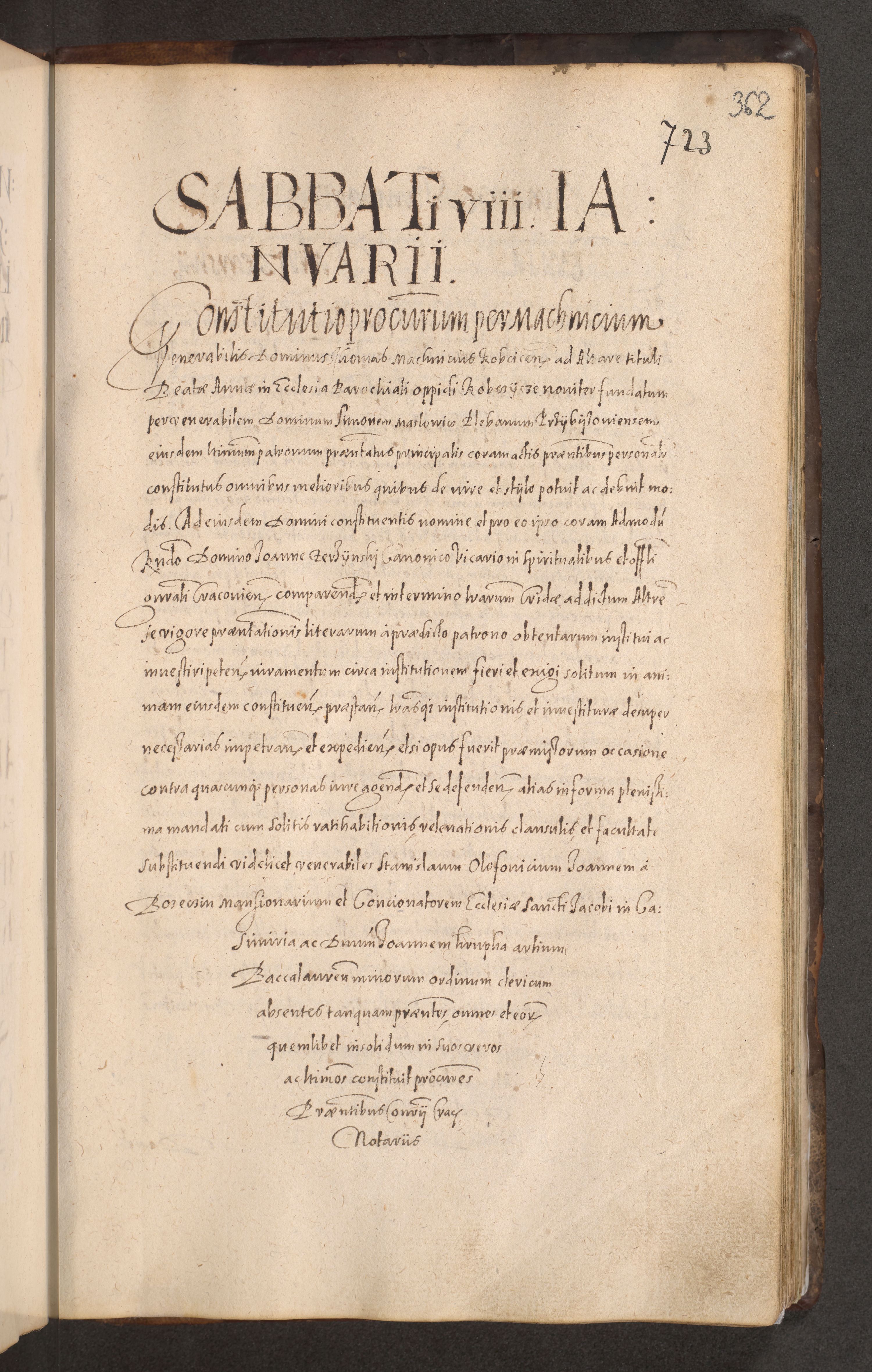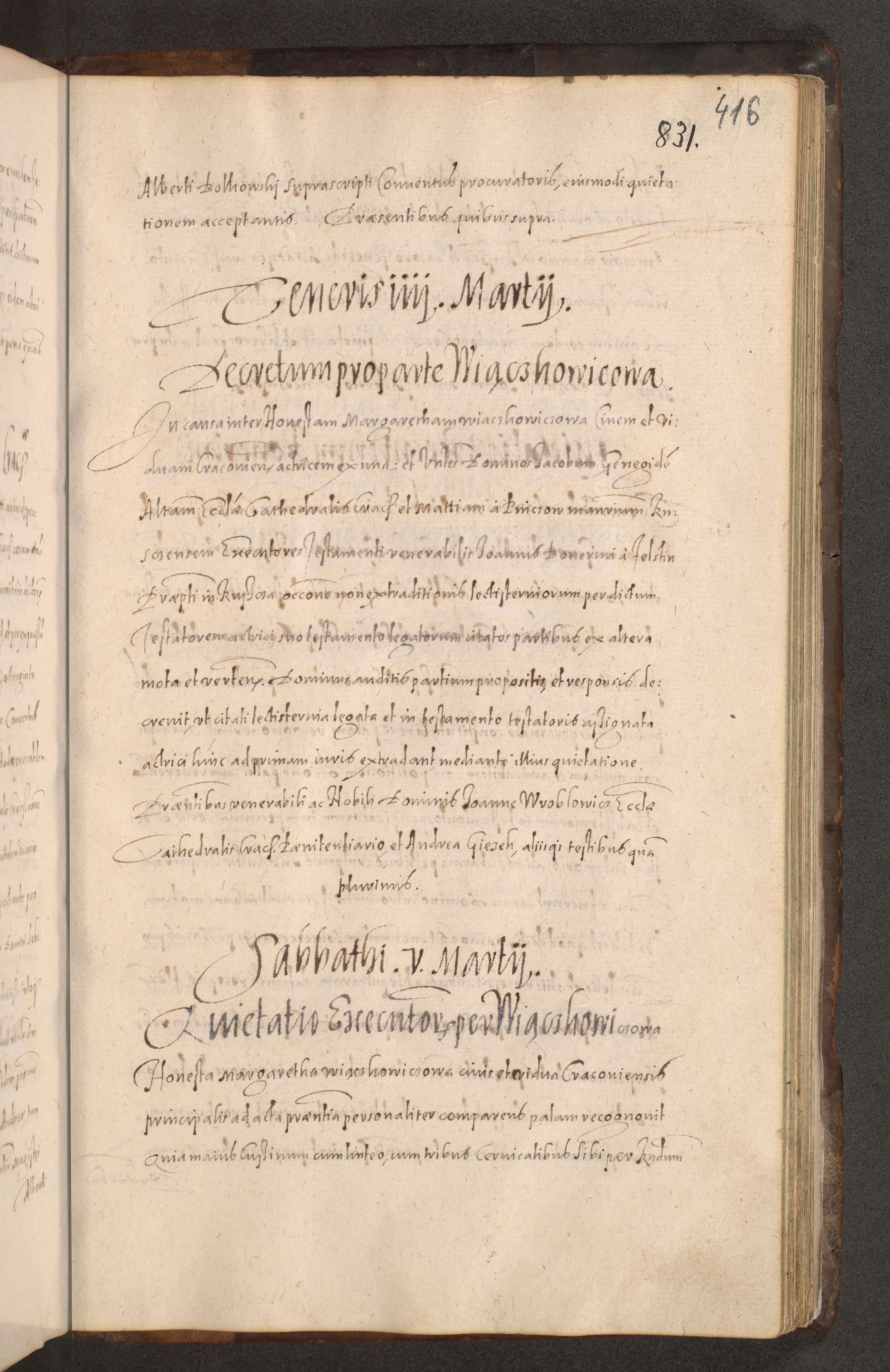 Acta actorum causarum obligationum institutionum decretorum constitutionum quietationum resignationum cissionum et atiaru obsernationum tam indiciariarum quam extra indiciariarum coram Admodum Reverendo Domino Joanne Zerzynski Canonico Vicario in Spiritualibus et Officiali generali Cracoviensis ad Annum Domini Millesimum Sextentissimum Vigesimum Indictione tertia Pontificatus SSmi D. N. D. Pauli Divina pronidentia Papae V. foeliciter moderni anno ipsins subfelici regimine Diocesis Cracoviensis Illustrissimi ac Reverendissimi D. N. D. Martini Szyszkowski Deigratia Episcopus Cracoviensis Ducis Severiensis in continuantur.