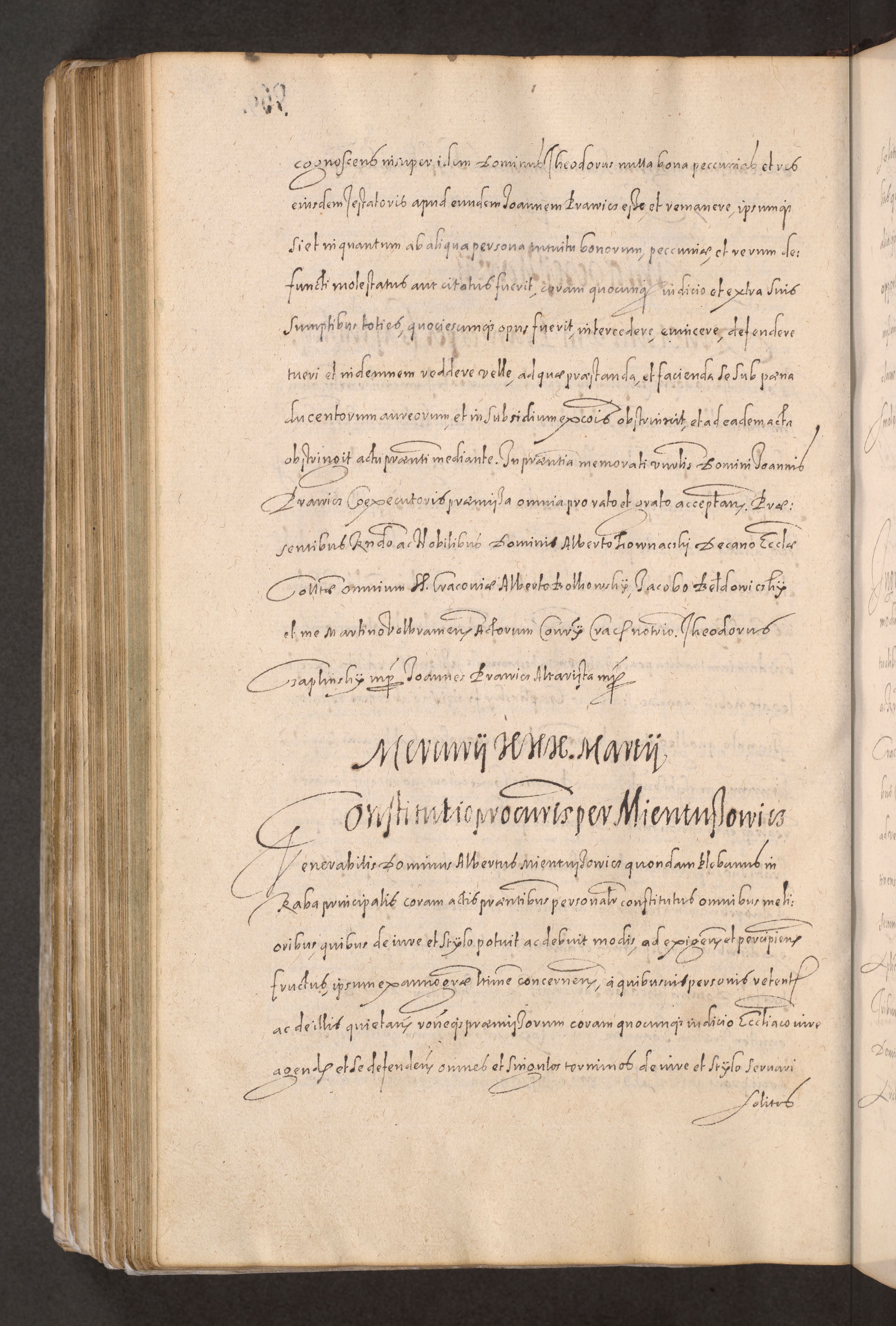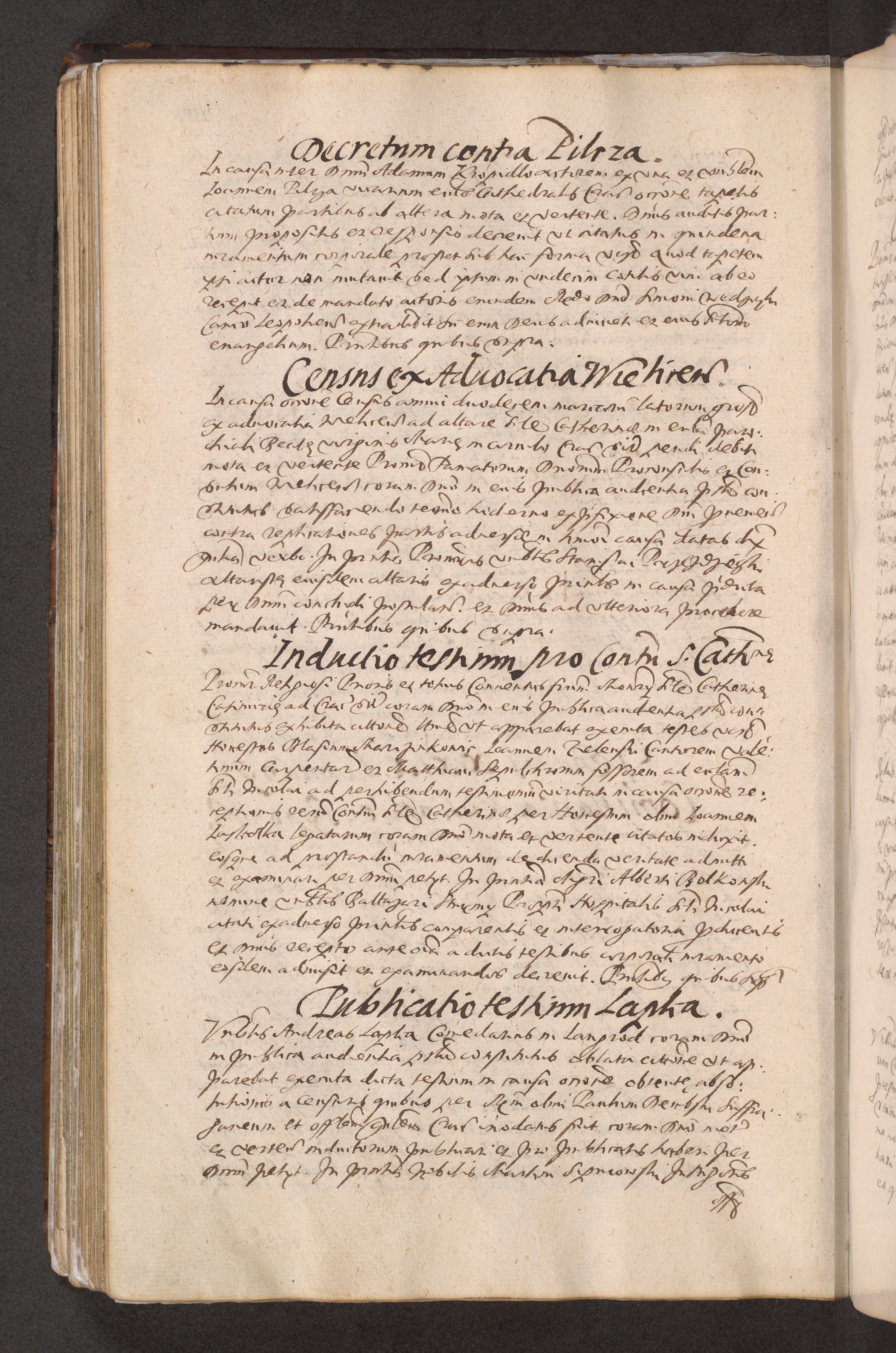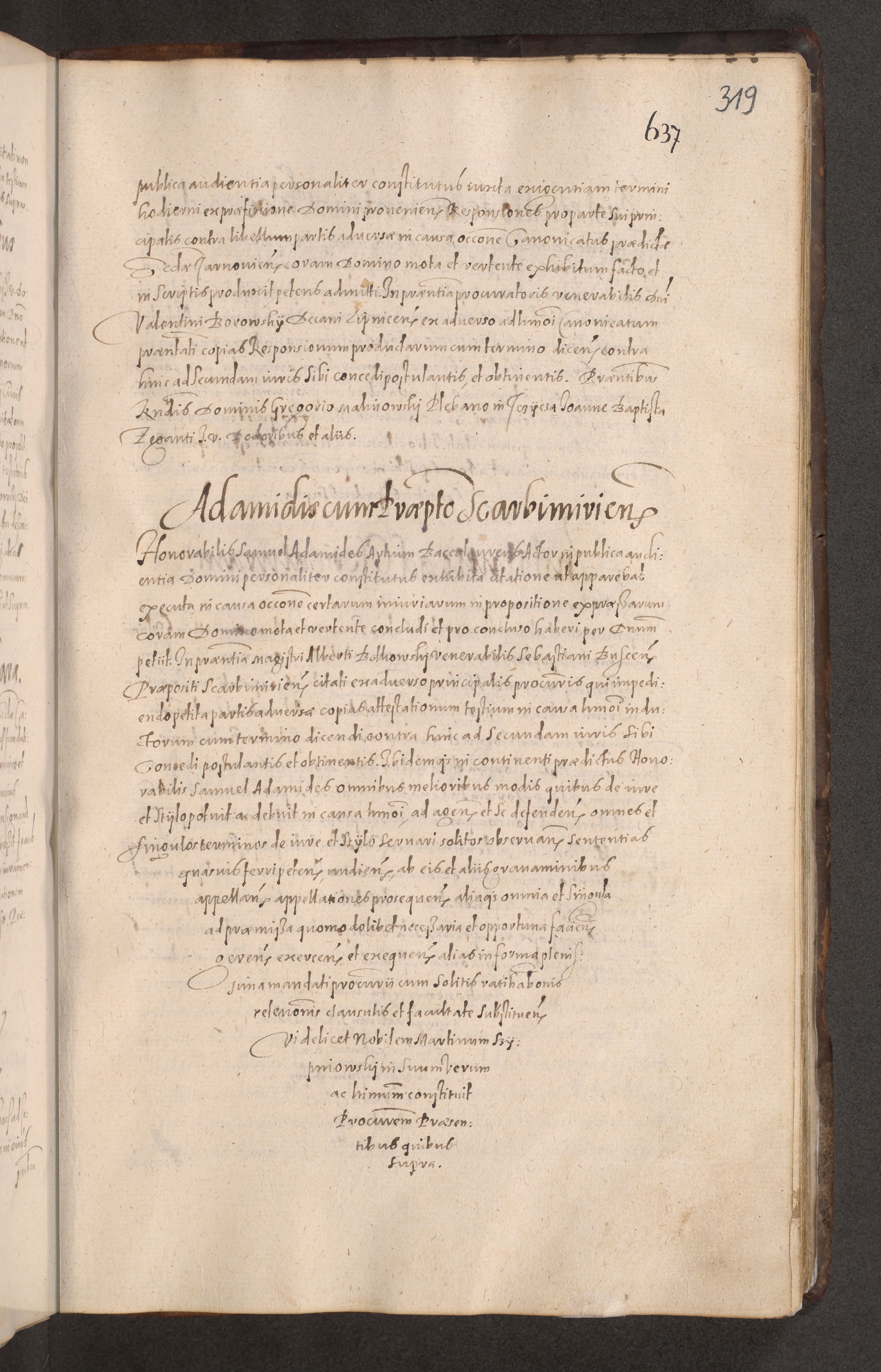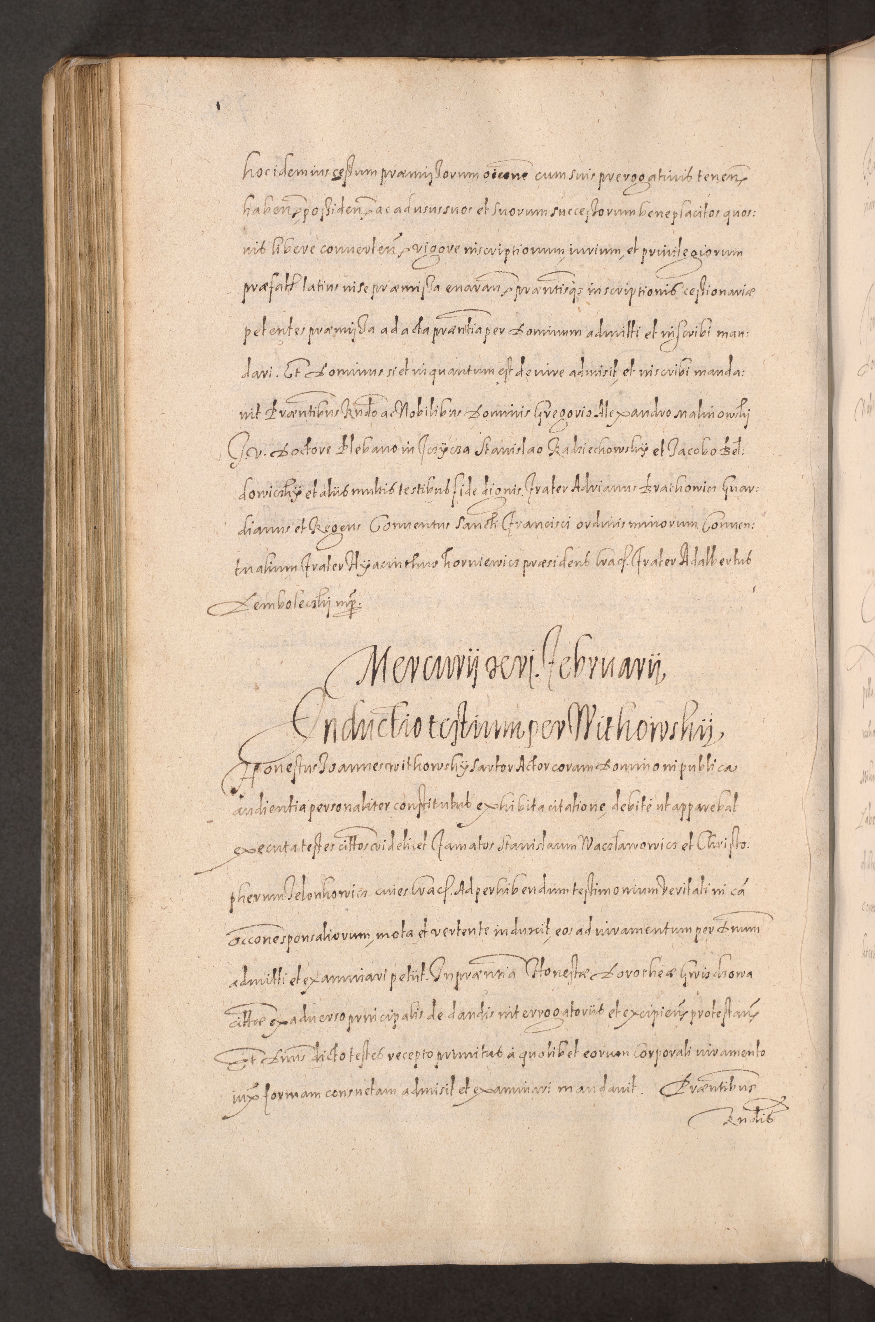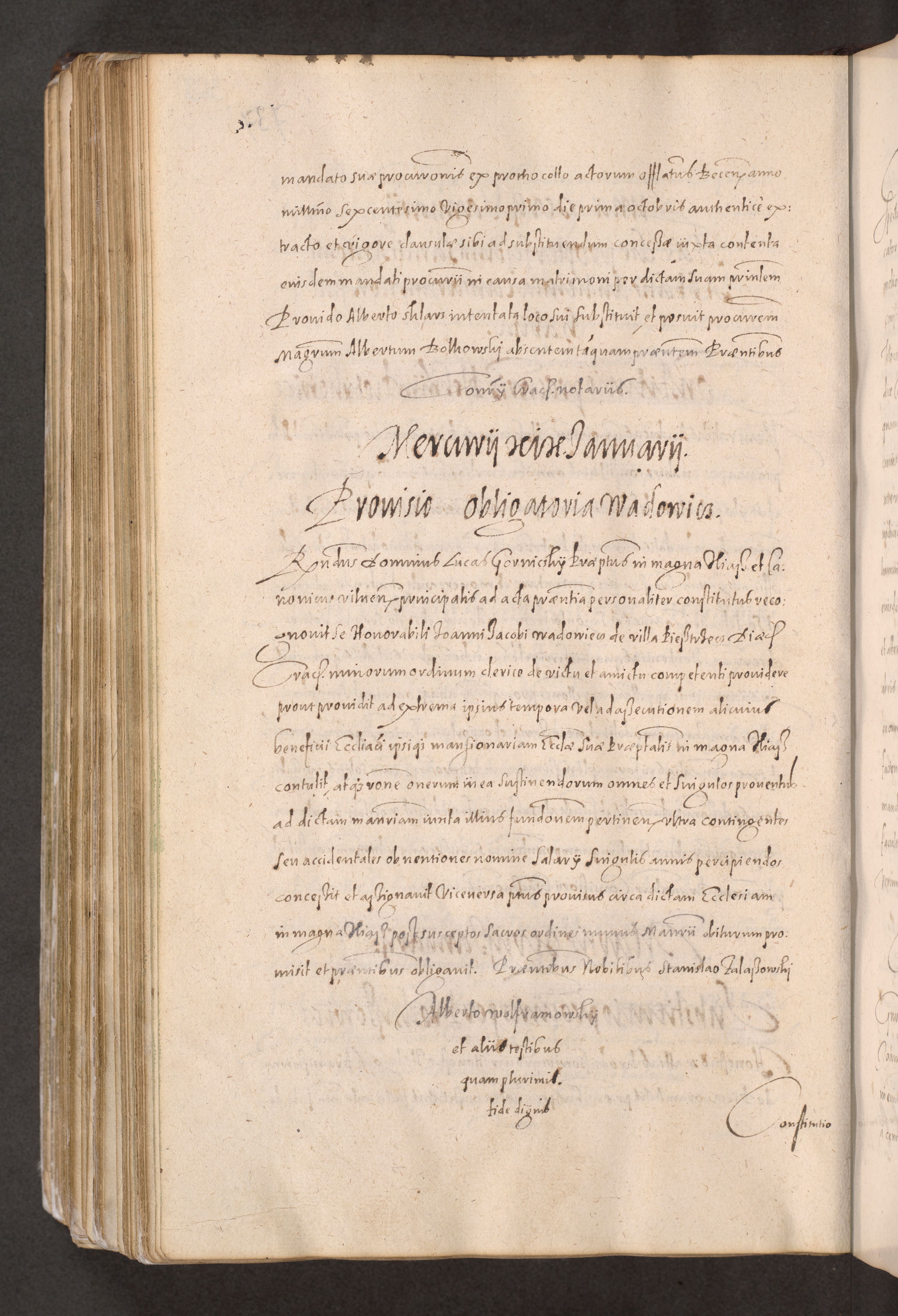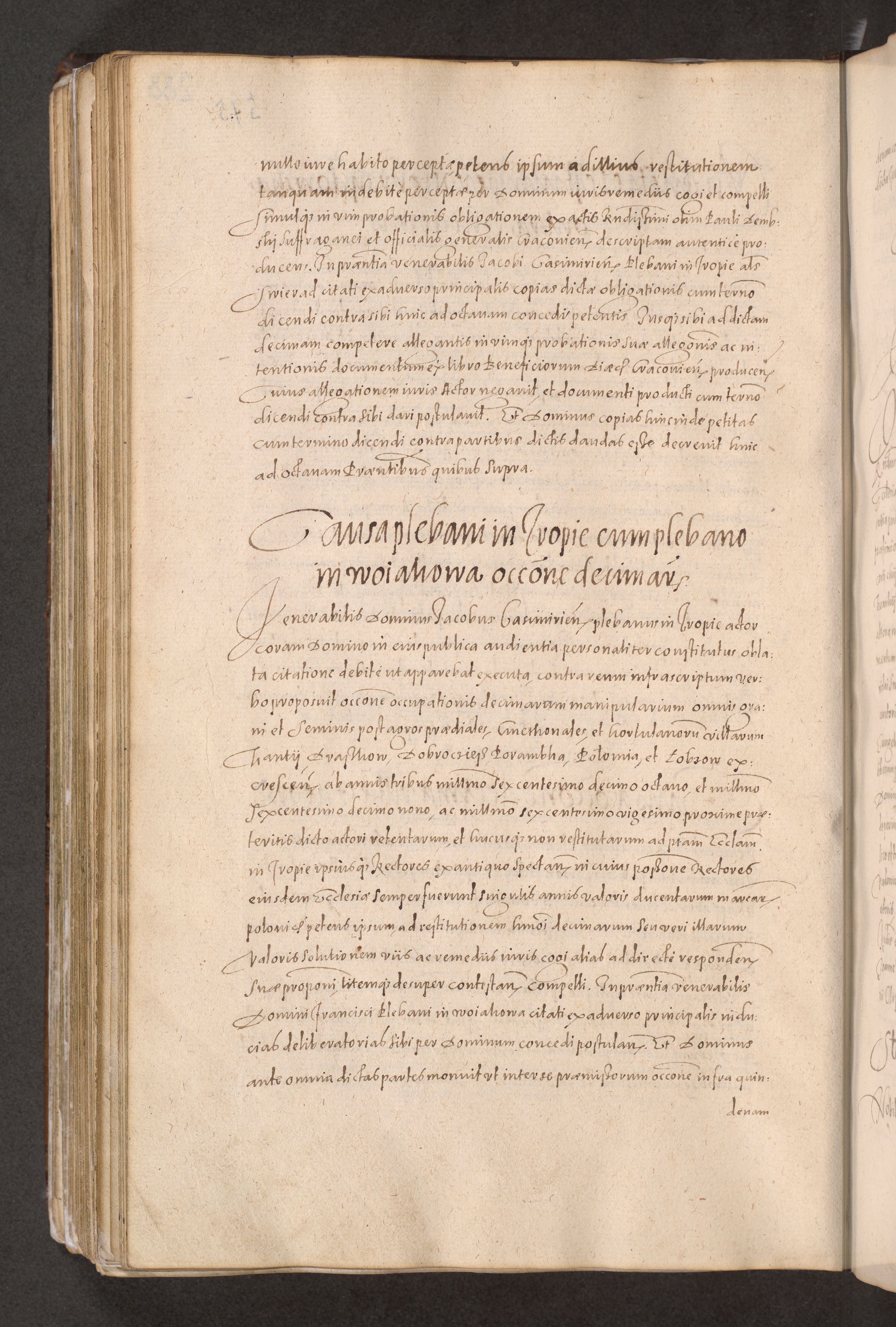 Acta actorum causarum obligationum institutionum decretorum constitutionum quietationum resignationum cissionum et atiaru obsernationum tam indiciariarum quam extra indiciariarum coram Admodum Reverendo Domino Joanne Zerzynski Canonico Vicario in Spiritualibus et Officiali generali Cracoviensis ad Annum Domini Millesimum Sextentissimum Vigesimum Indictione tertia Pontificatus SSmi D. N. D. Pauli Divina pronidentia Papae V. foeliciter moderni anno ipsins subfelici regimine Diocesis Cracoviensis Illustrissimi ac Reverendissimi D. N. D. Martini Szyszkowski Deigratia Episcopus Cracoviensis Ducis Severiensis in continuantur.