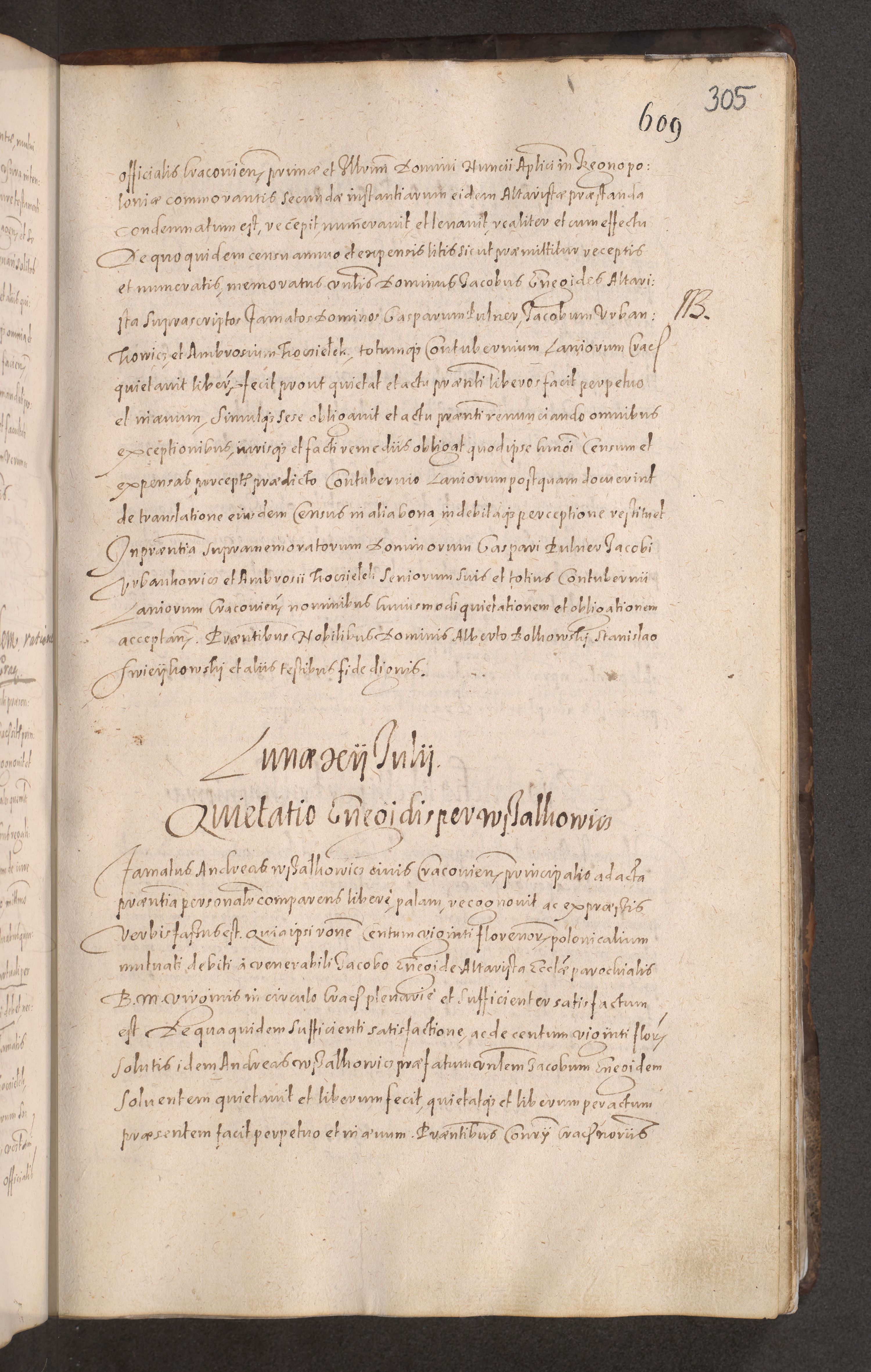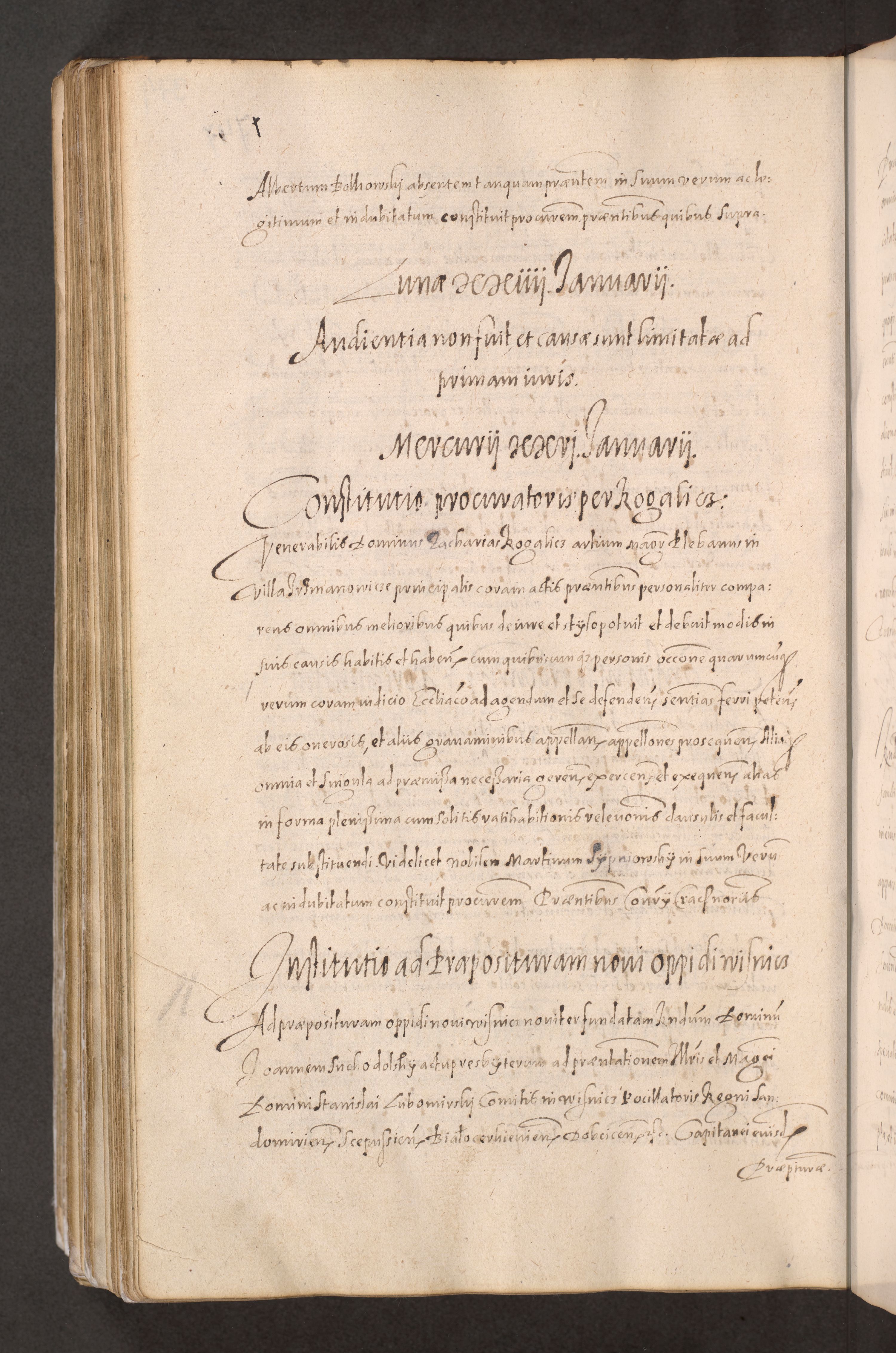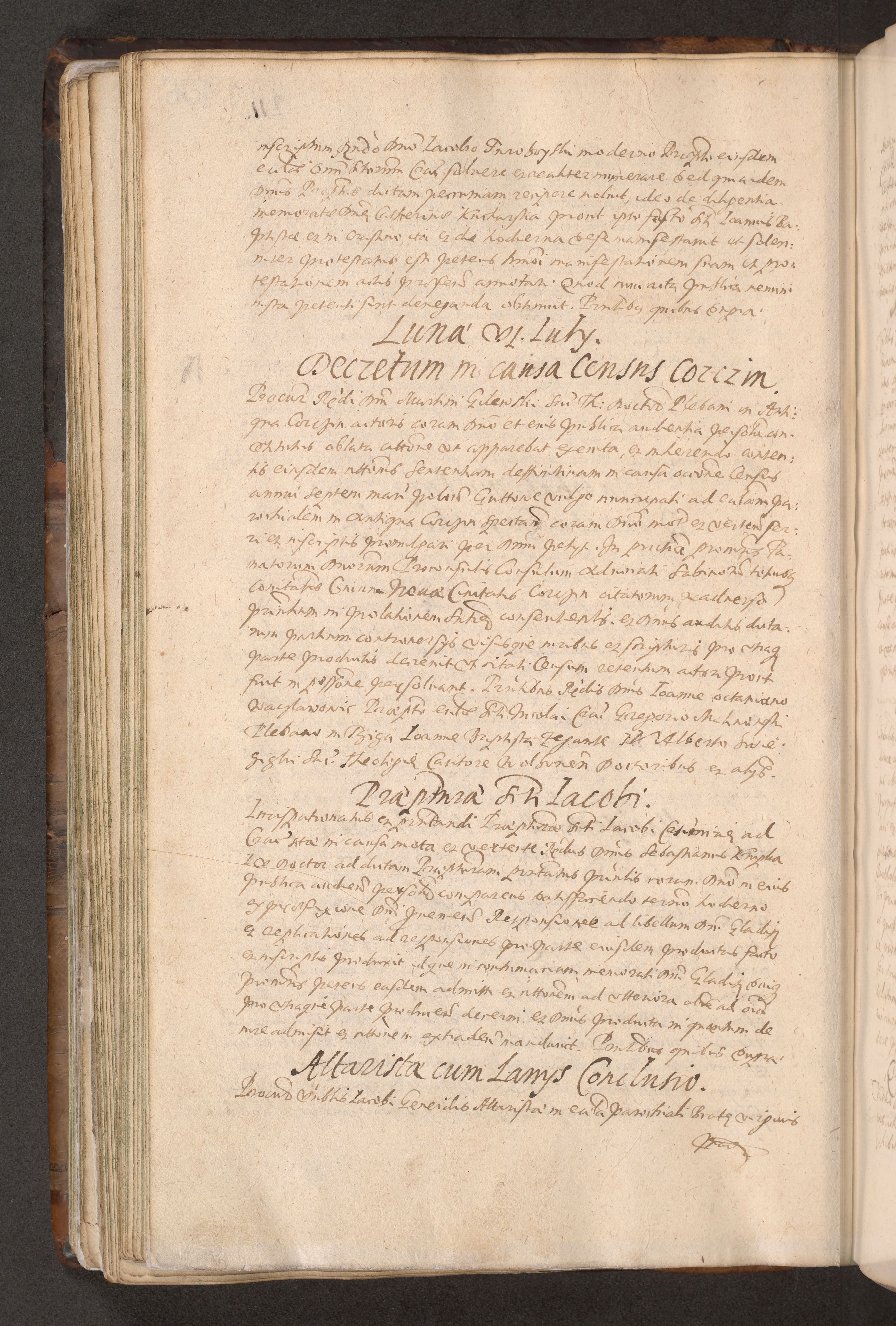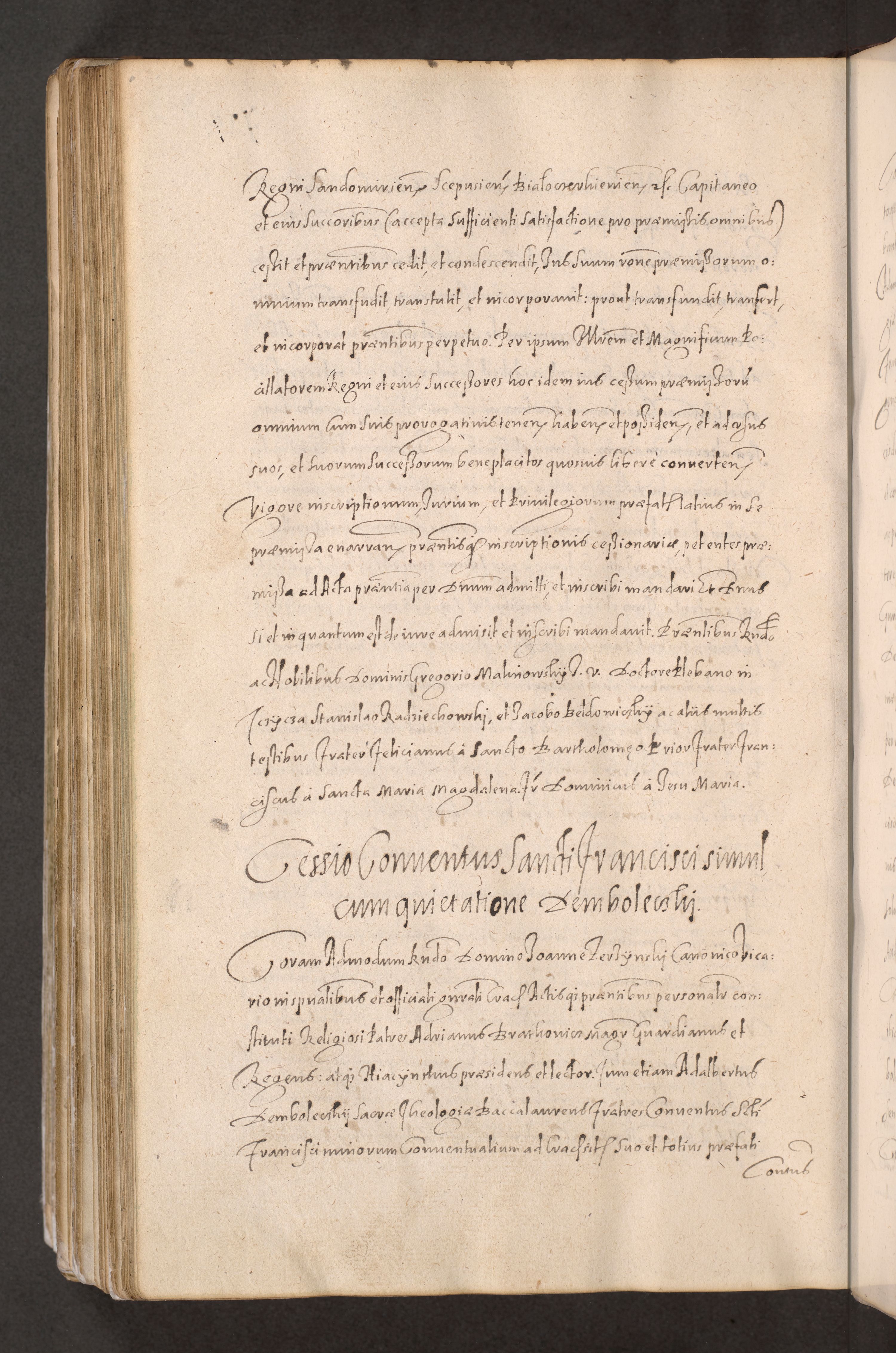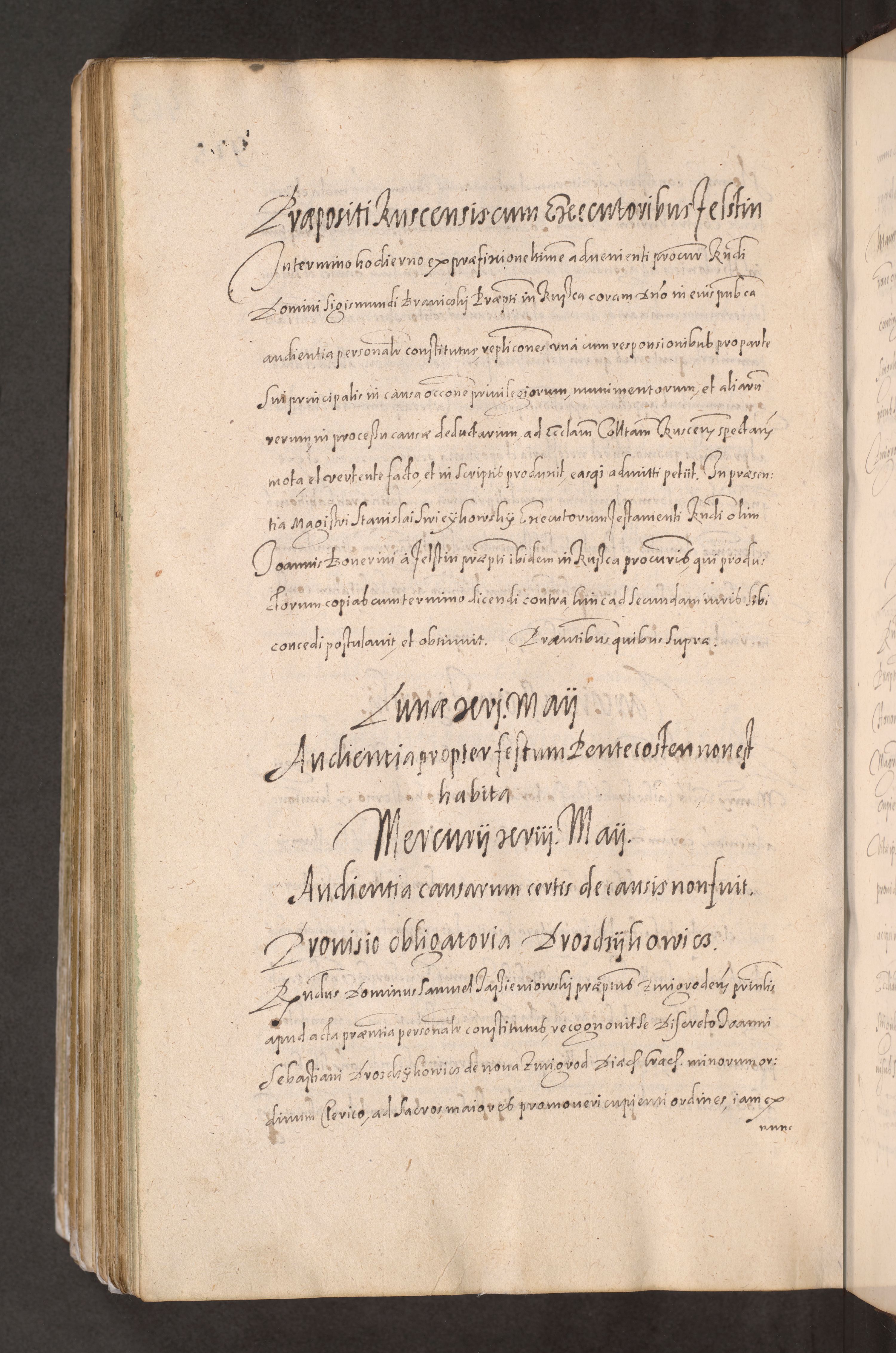 Acta actorum causarum obligationum institutionum decretorum constitutionum quietationum resignationum cissionum et atiaru obsernationum tam indiciariarum quam extra indiciariarum coram Admodum Reverendo Domino Joanne Zerzynski Canonico Vicario in Spiritualibus et Officiali generali Cracoviensis ad Annum Domini Millesimum Sextentissimum Vigesimum Indictione tertia Pontificatus SSmi D. N. D. Pauli Divina pronidentia Papae V. foeliciter moderni anno ipsins subfelici regimine Diocesis Cracoviensis Illustrissimi ac Reverendissimi D. N. D. Martini Szyszkowski Deigratia Episcopus Cracoviensis Ducis Severiensis in continuantur.