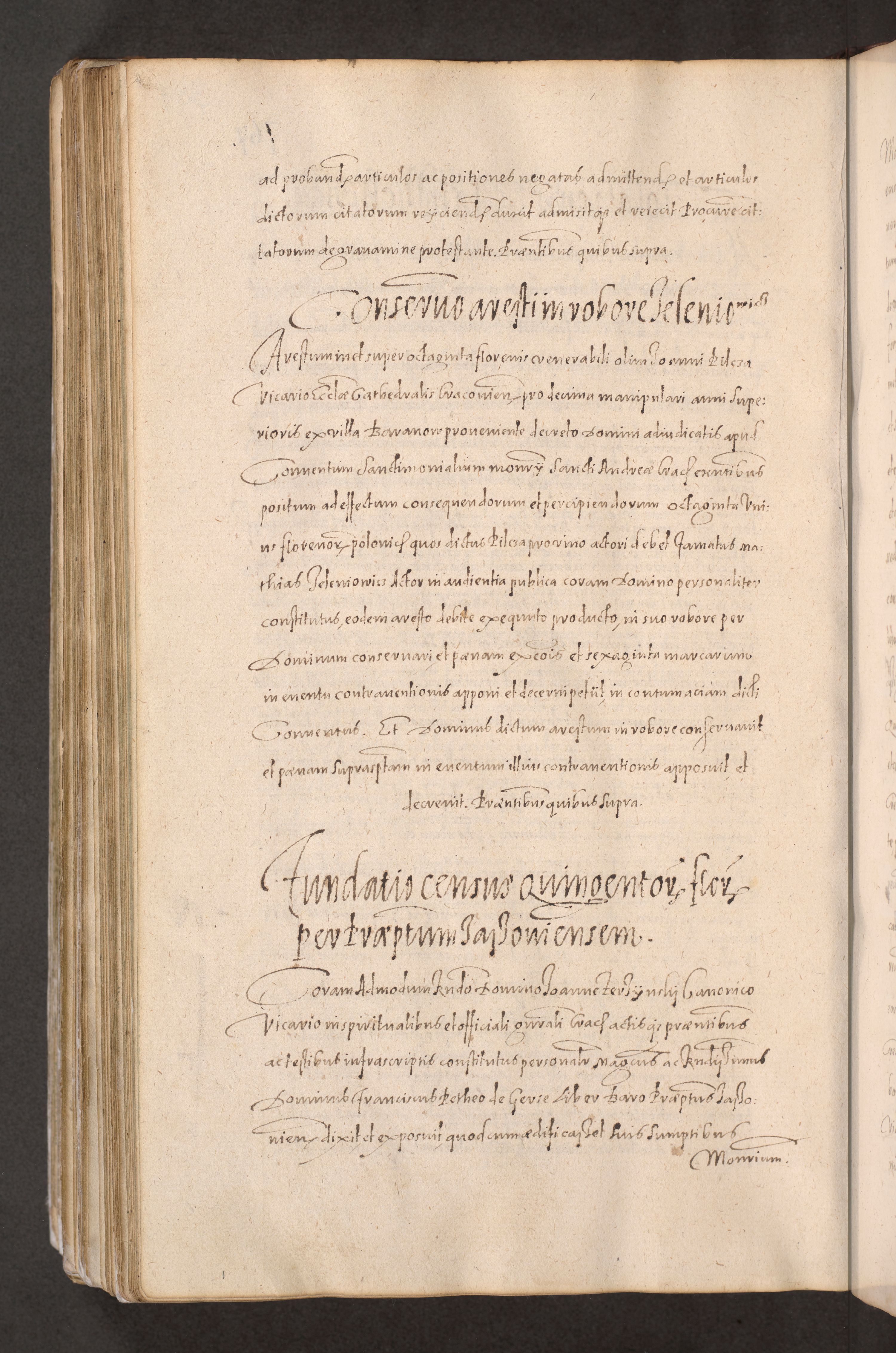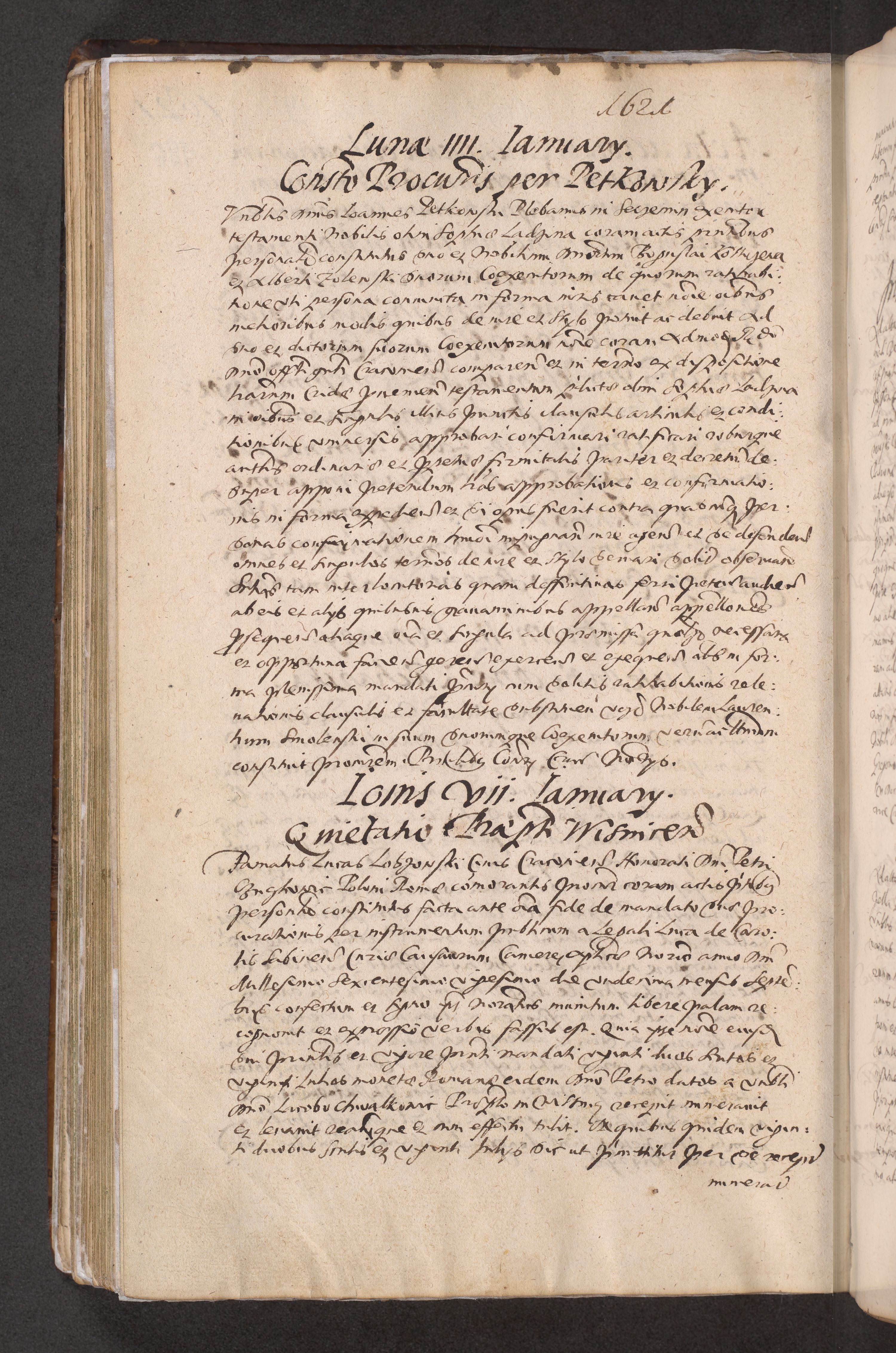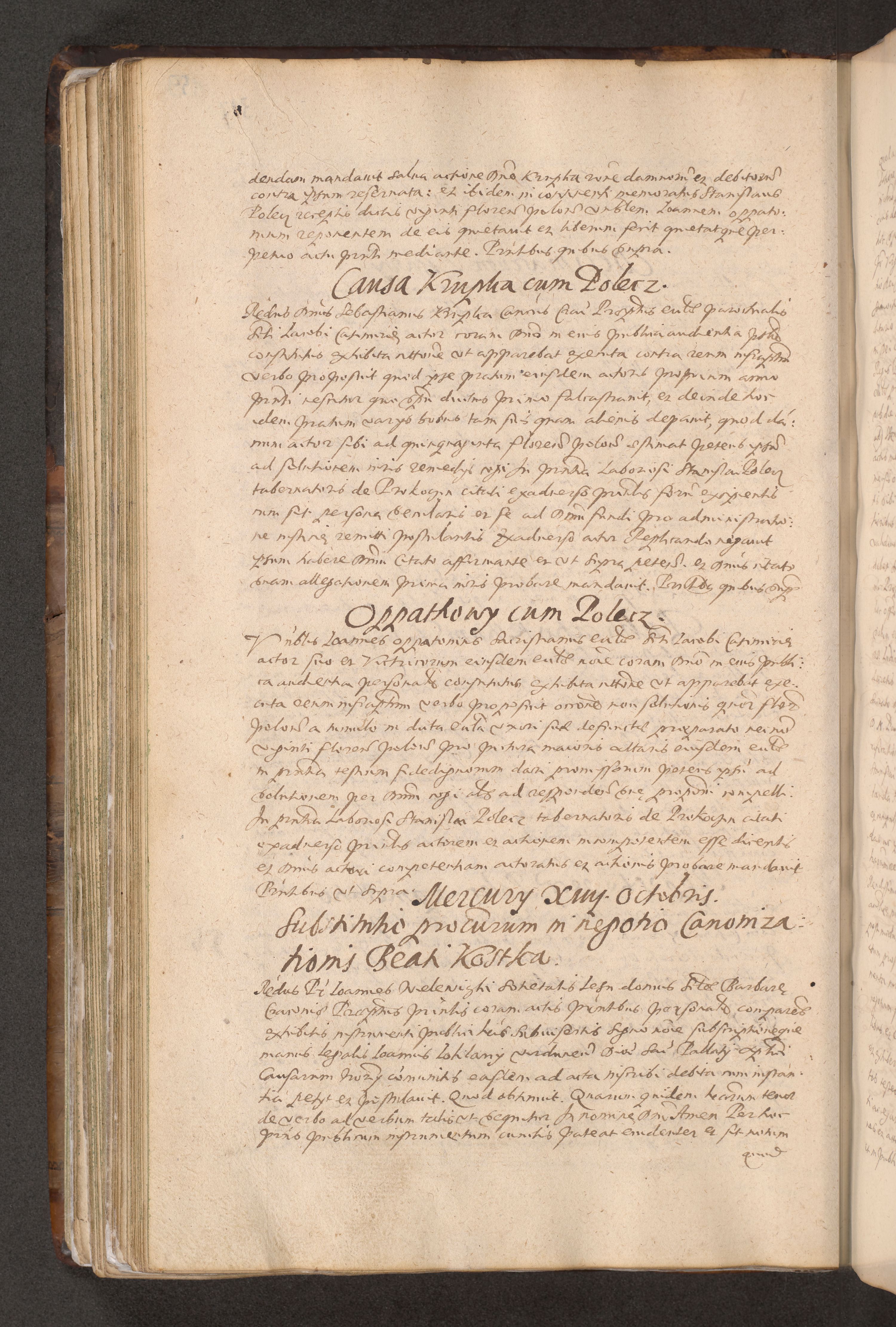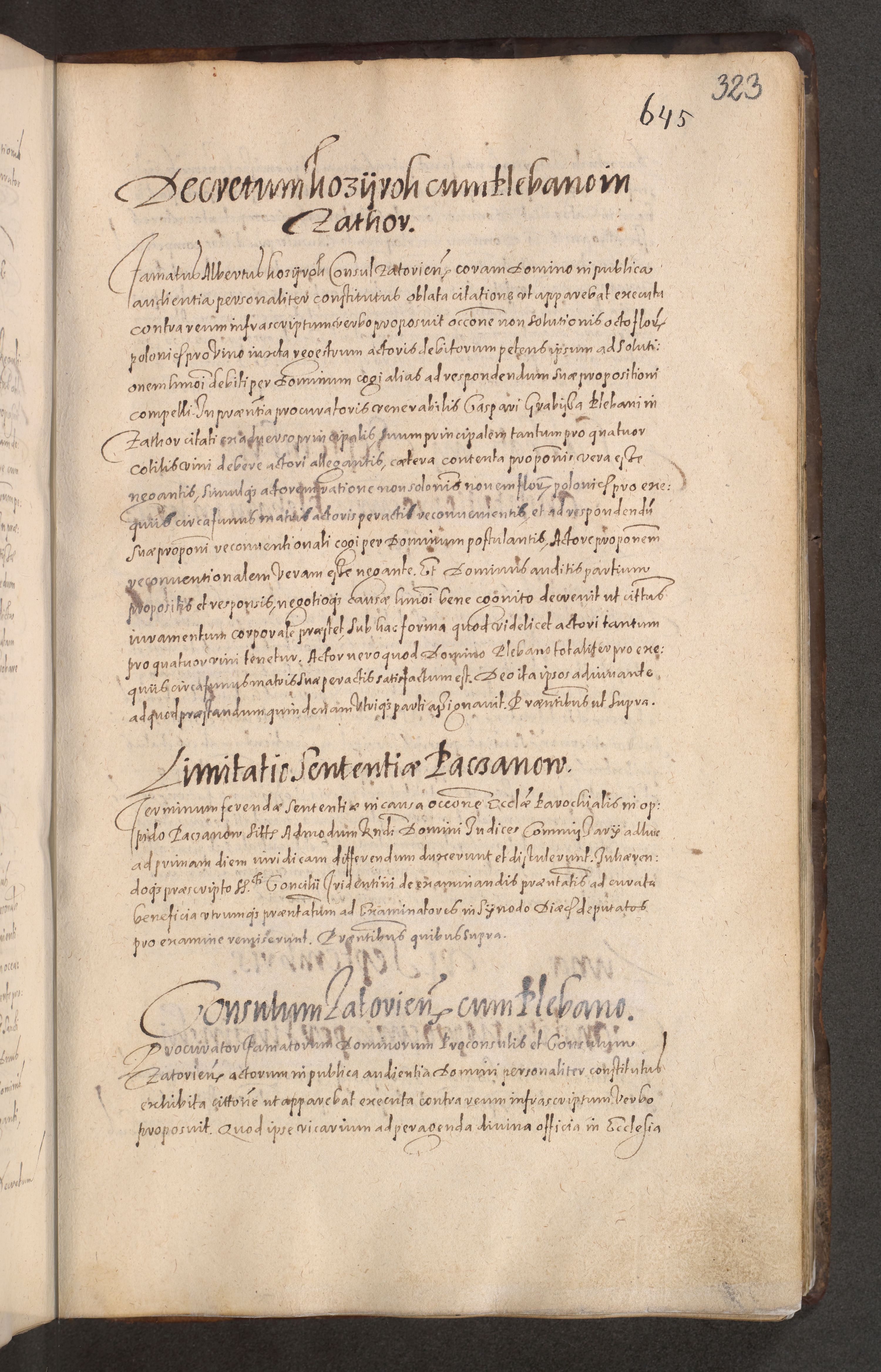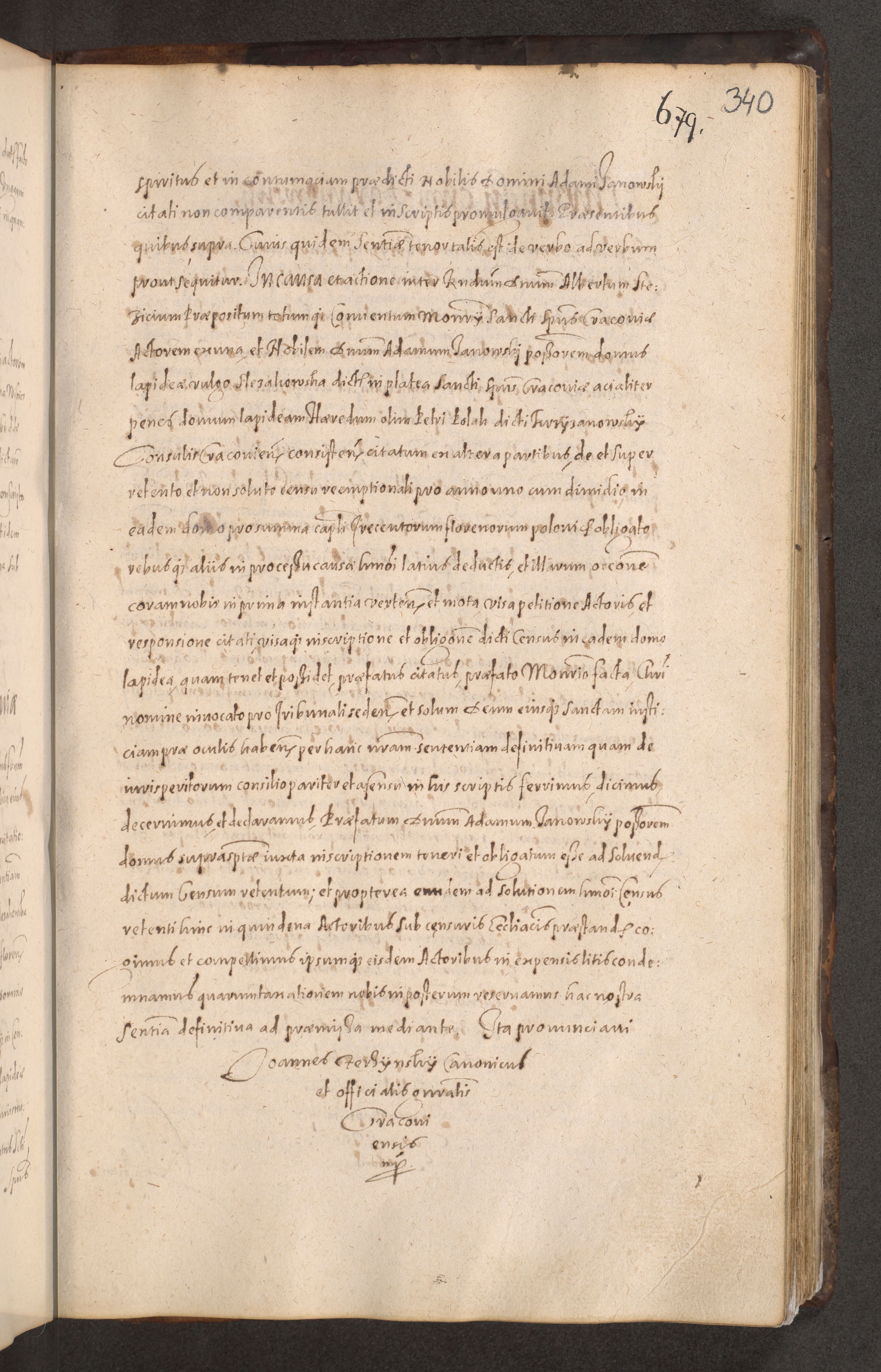 Acta actorum causarum obligationum institutionum decretorum constitutionum quietationum resignationum cissionum et atiaru obsernationum tam indiciariarum quam extra indiciariarum coram Admodum Reverendo Domino Joanne Zerzynski Canonico Vicario in Spiritualibus et Officiali generali Cracoviensis ad Annum Domini Millesimum Sextentissimum Vigesimum Indictione tertia Pontificatus SSmi D. N. D. Pauli Divina pronidentia Papae V. foeliciter moderni anno ipsins subfelici regimine Diocesis Cracoviensis Illustrissimi ac Reverendissimi D. N. D. Martini Szyszkowski Deigratia Episcopus Cracoviensis Ducis Severiensis in continuantur.