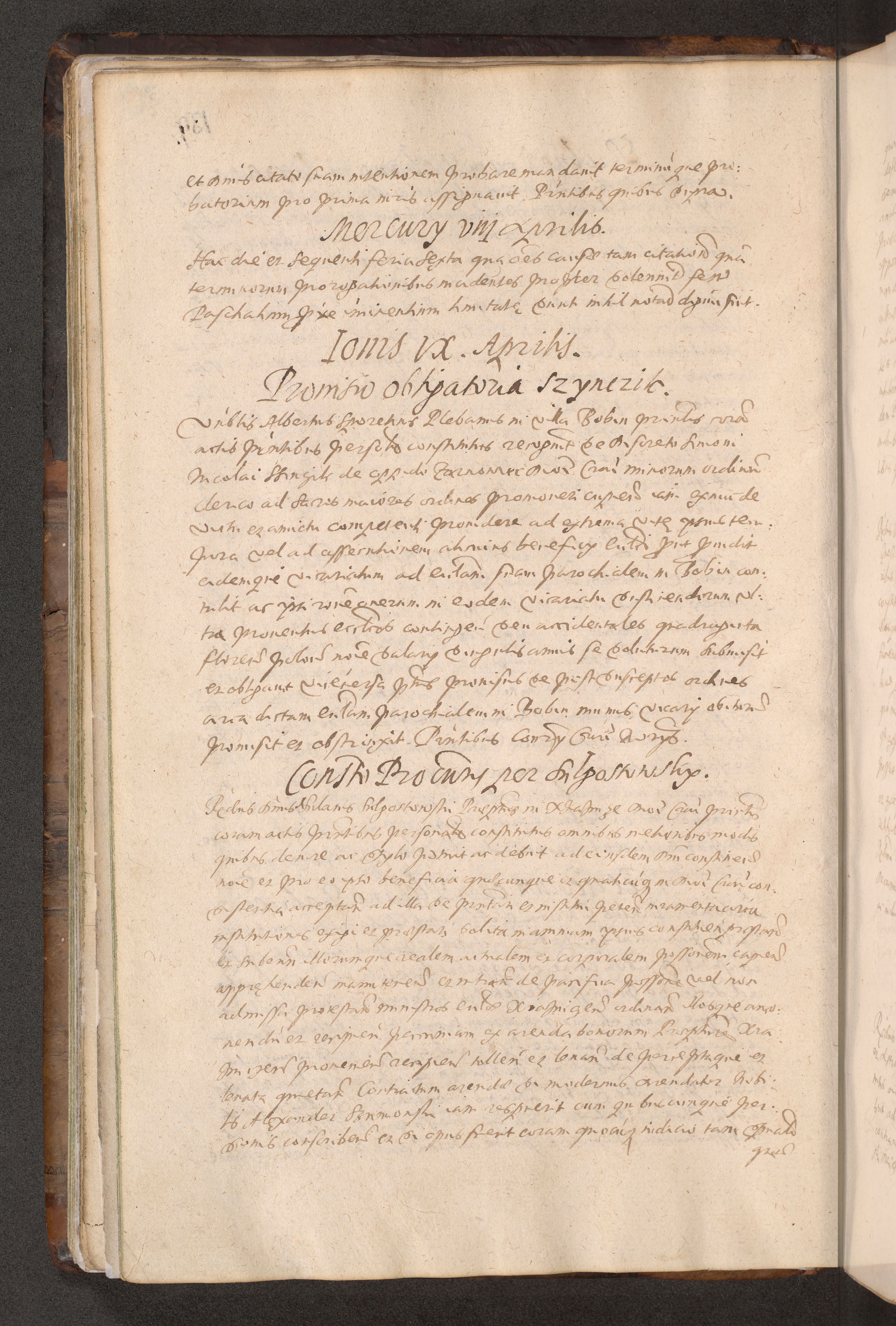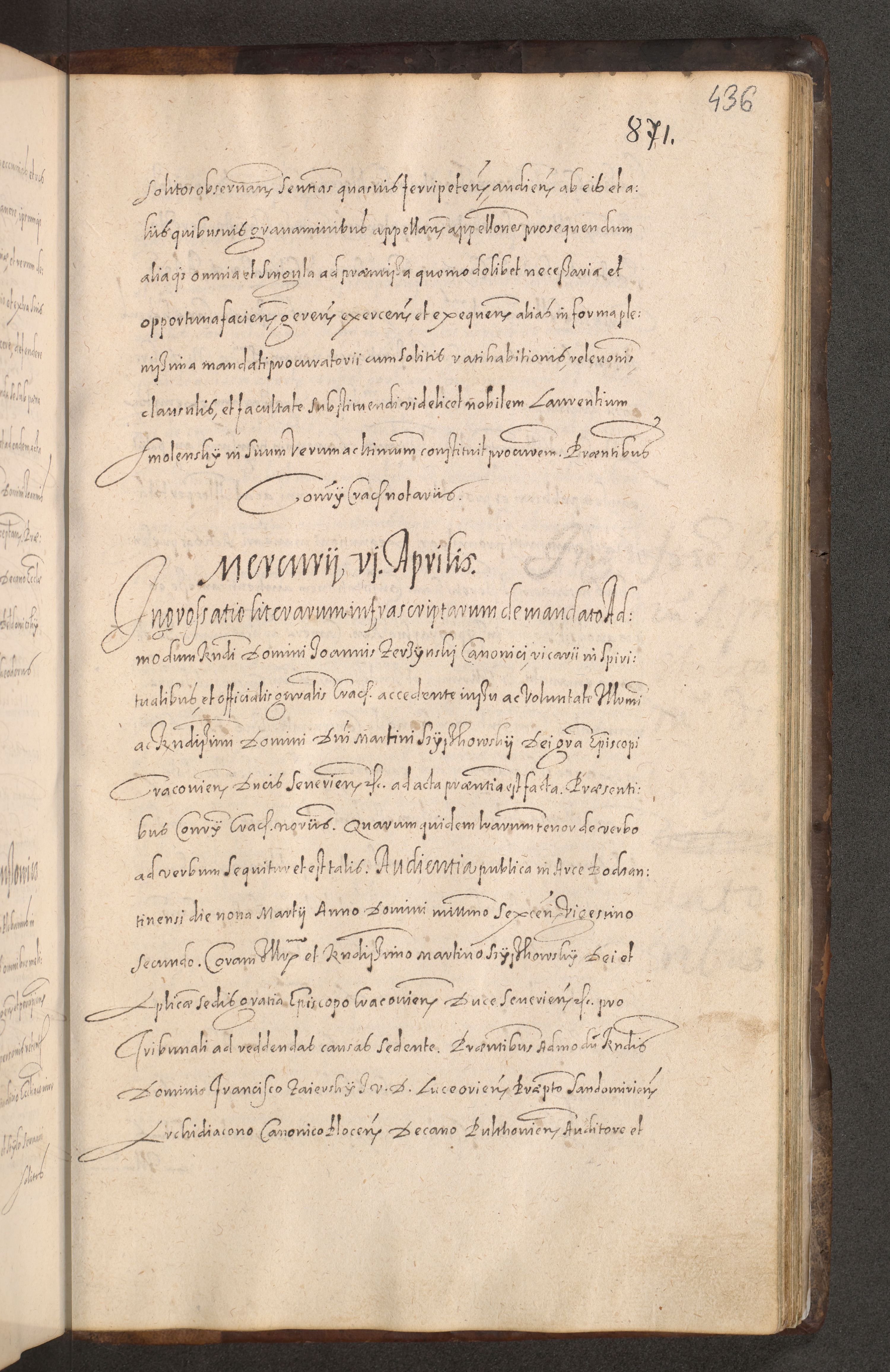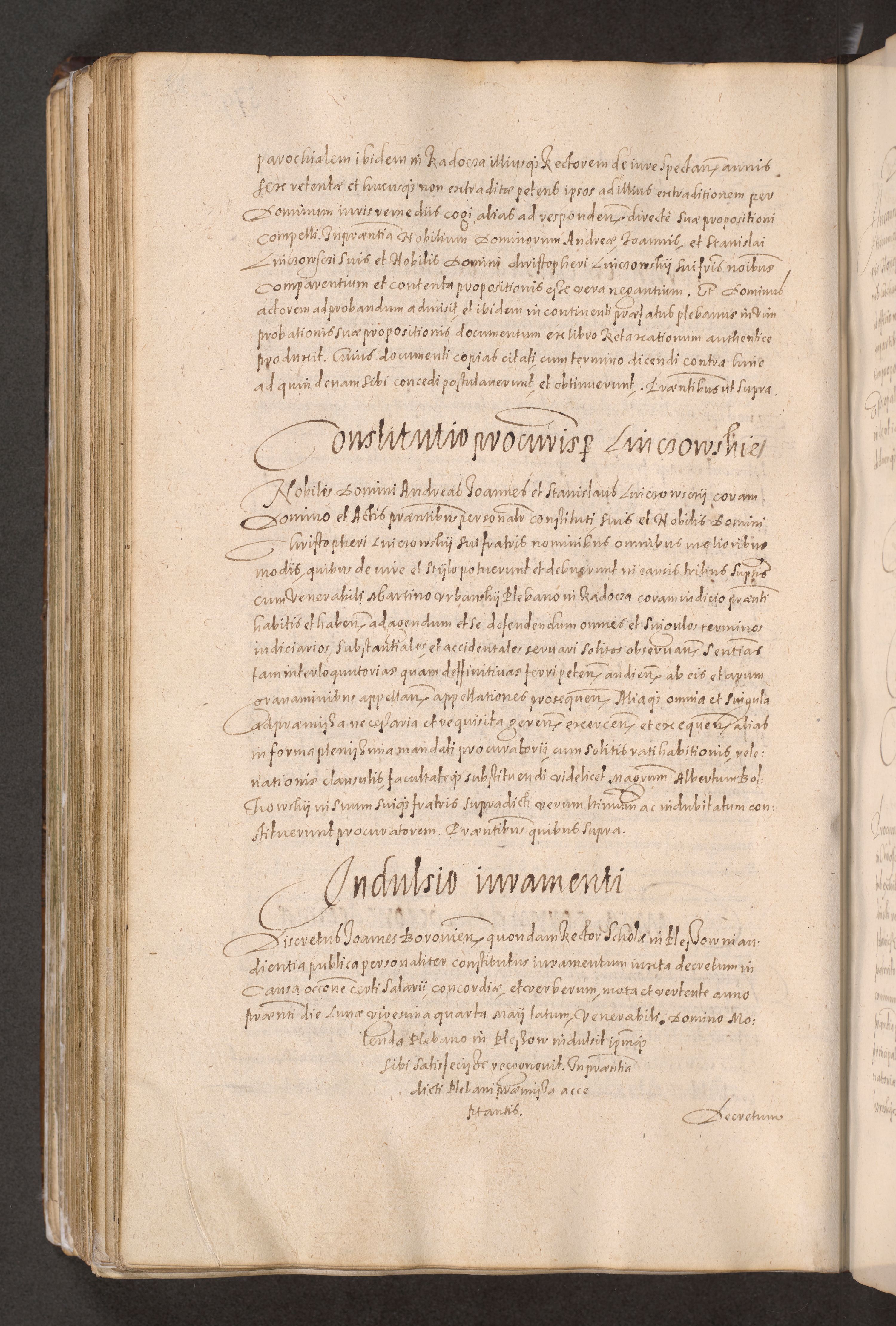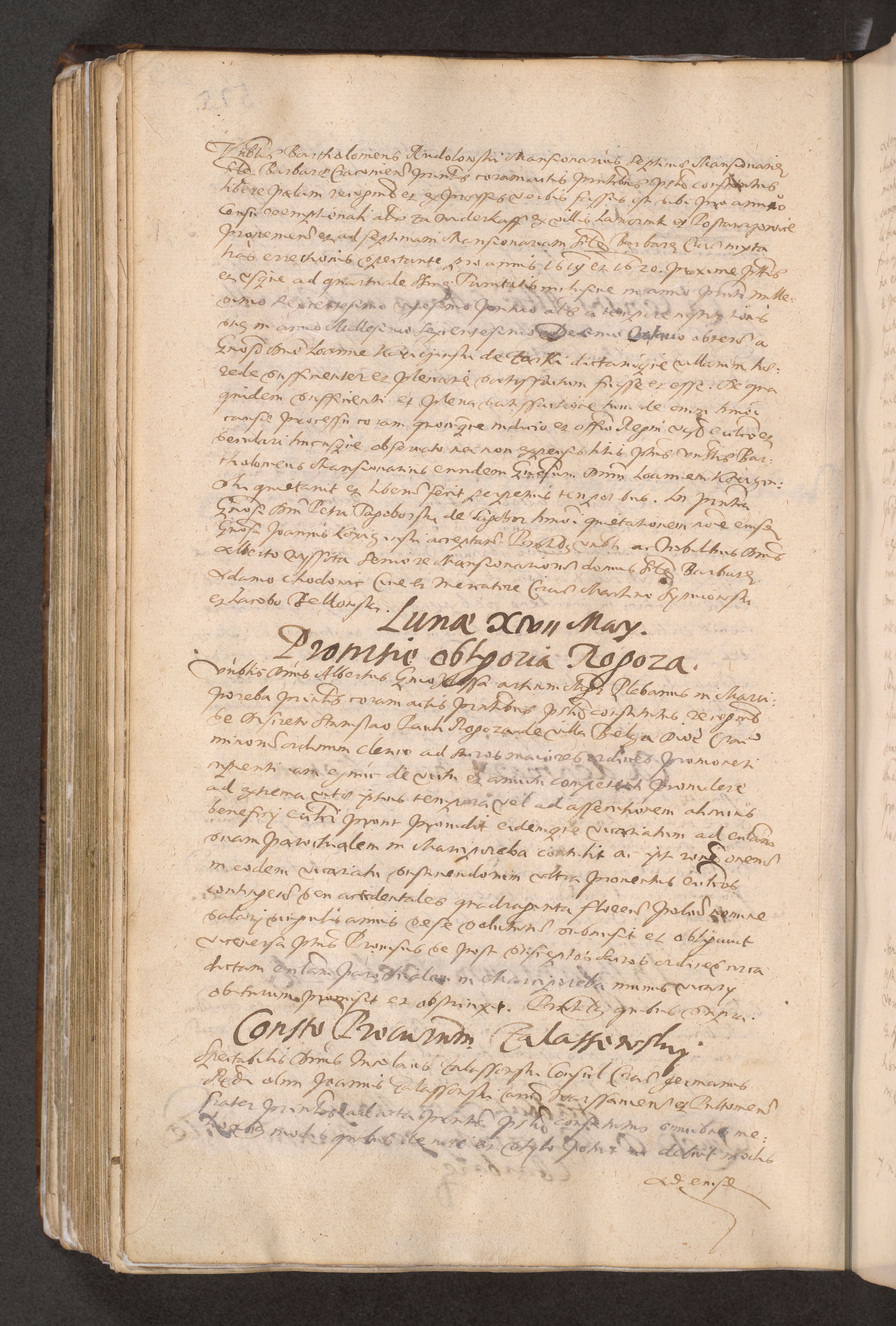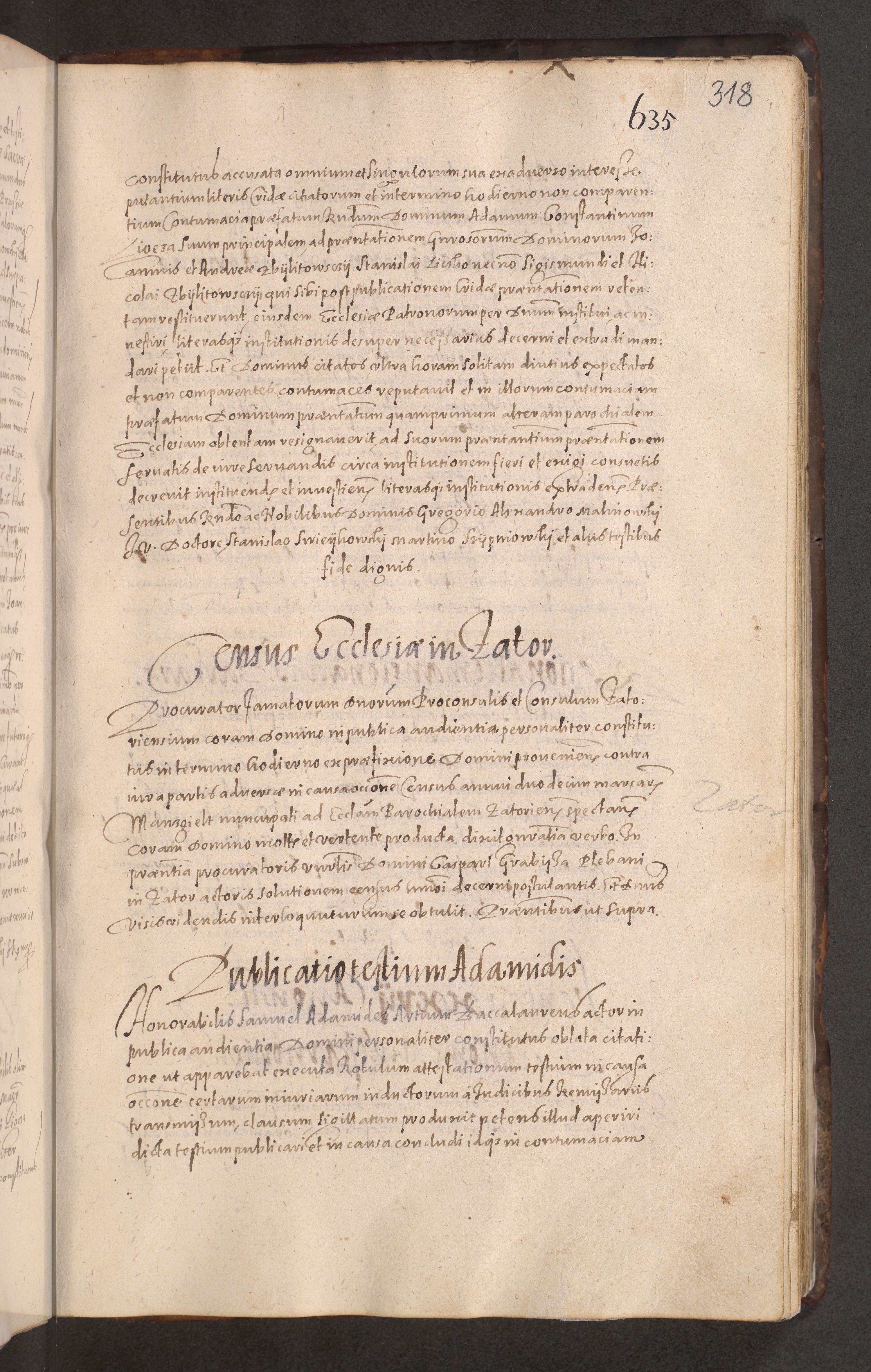 Acta actorum causarum obligationum institutionum decretorum constitutionum quietationum resignationum cissionum et atiaru obsernationum tam indiciariarum quam extra indiciariarum coram Admodum Reverendo Domino Joanne Zerzynski Canonico Vicario in Spiritualibus et Officiali generali Cracoviensis ad Annum Domini Millesimum Sextentissimum Vigesimum Indictione tertia Pontificatus SSmi D. N. D. Pauli Divina pronidentia Papae V. foeliciter moderni anno ipsins subfelici regimine Diocesis Cracoviensis Illustrissimi ac Reverendissimi D. N. D. Martini Szyszkowski Deigratia Episcopus Cracoviensis Ducis Severiensis in continuantur.