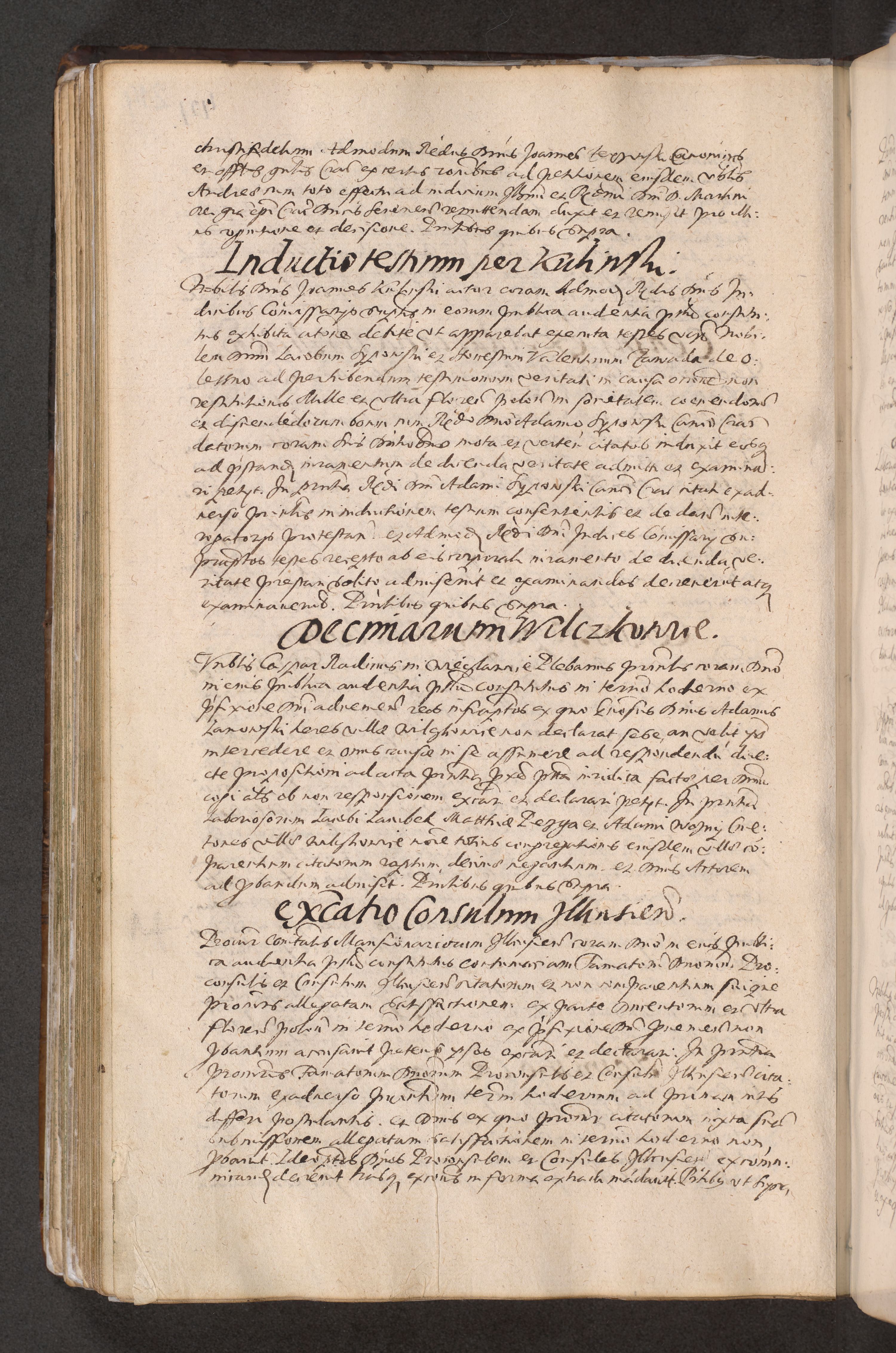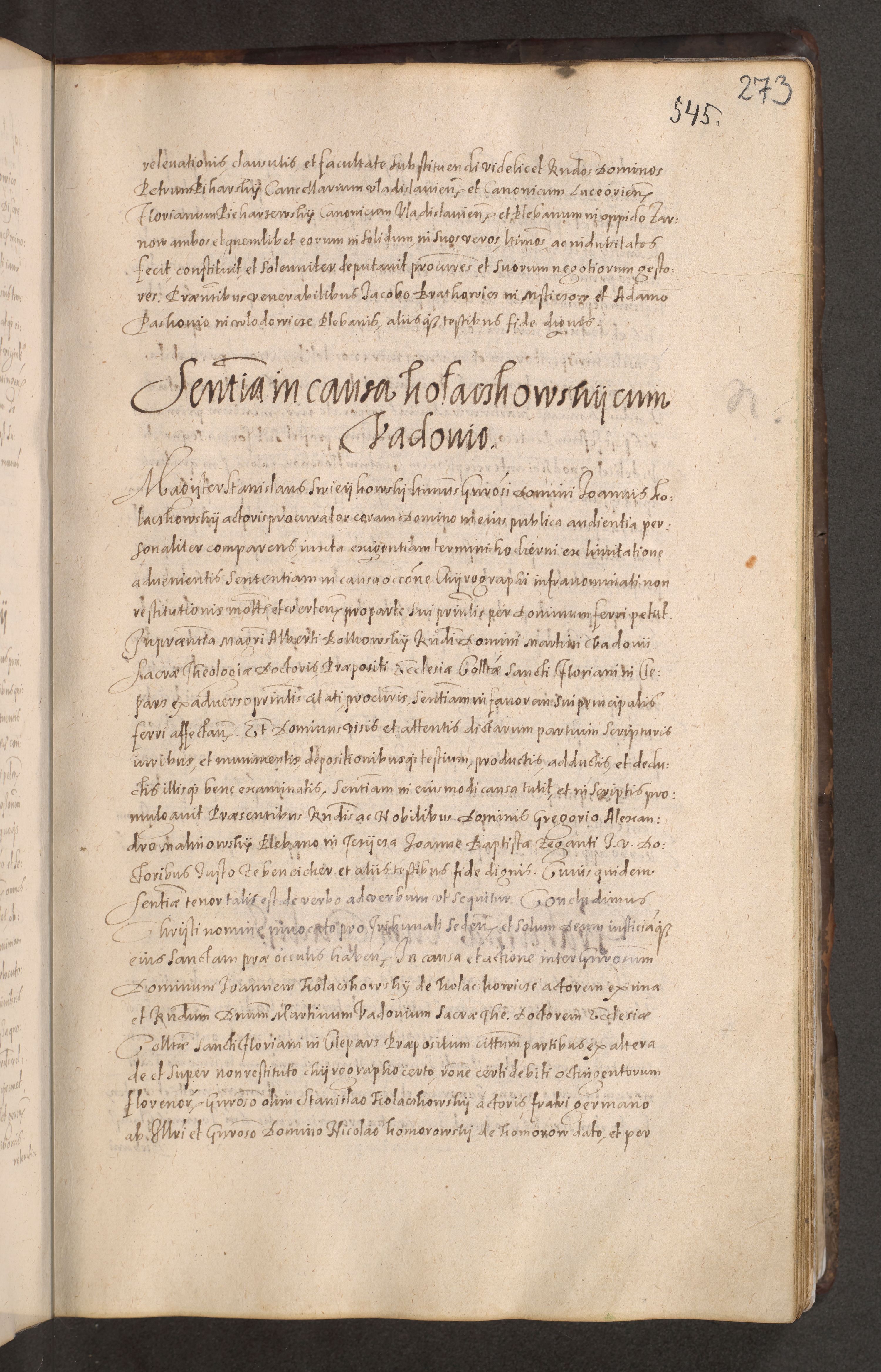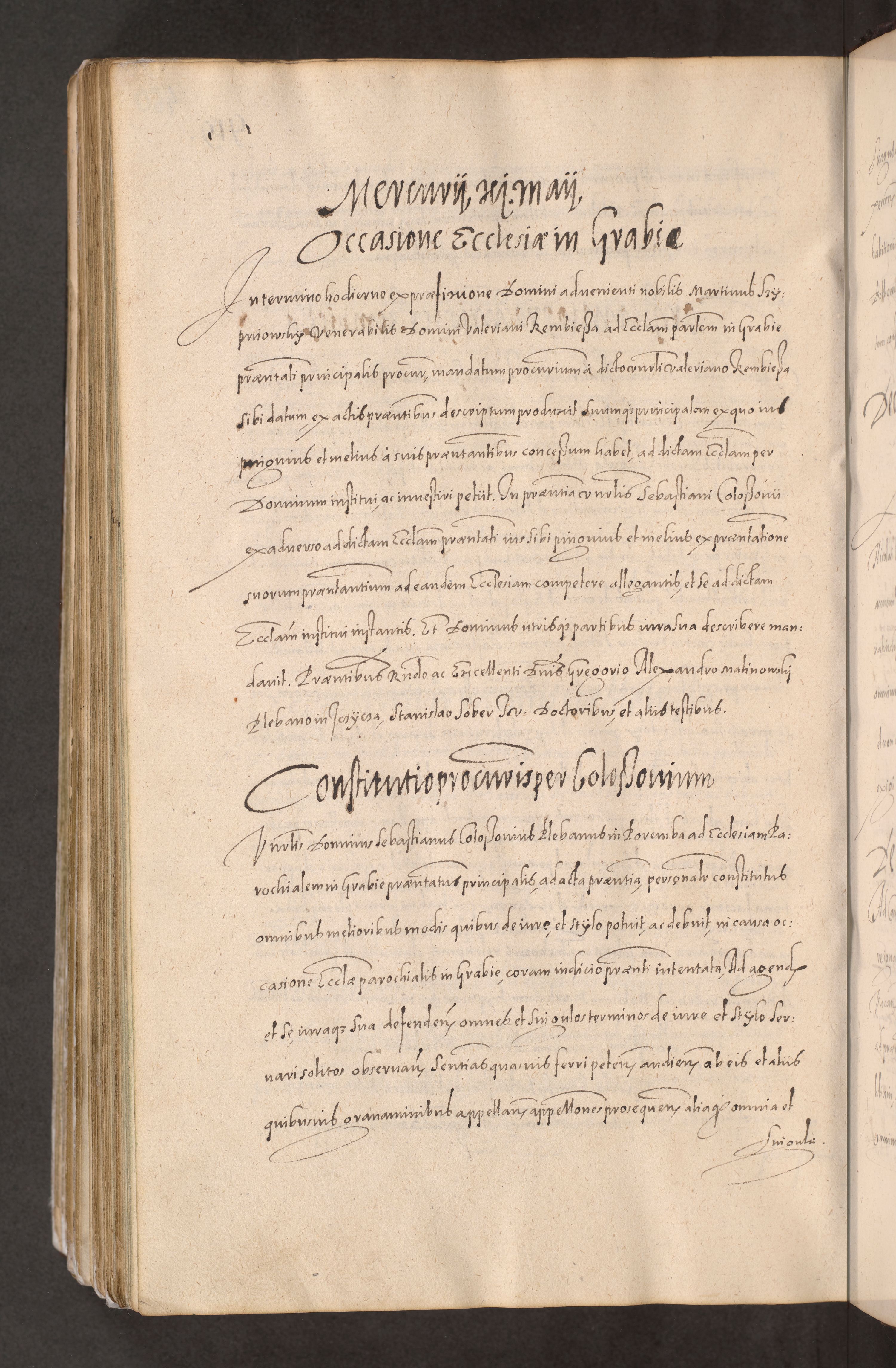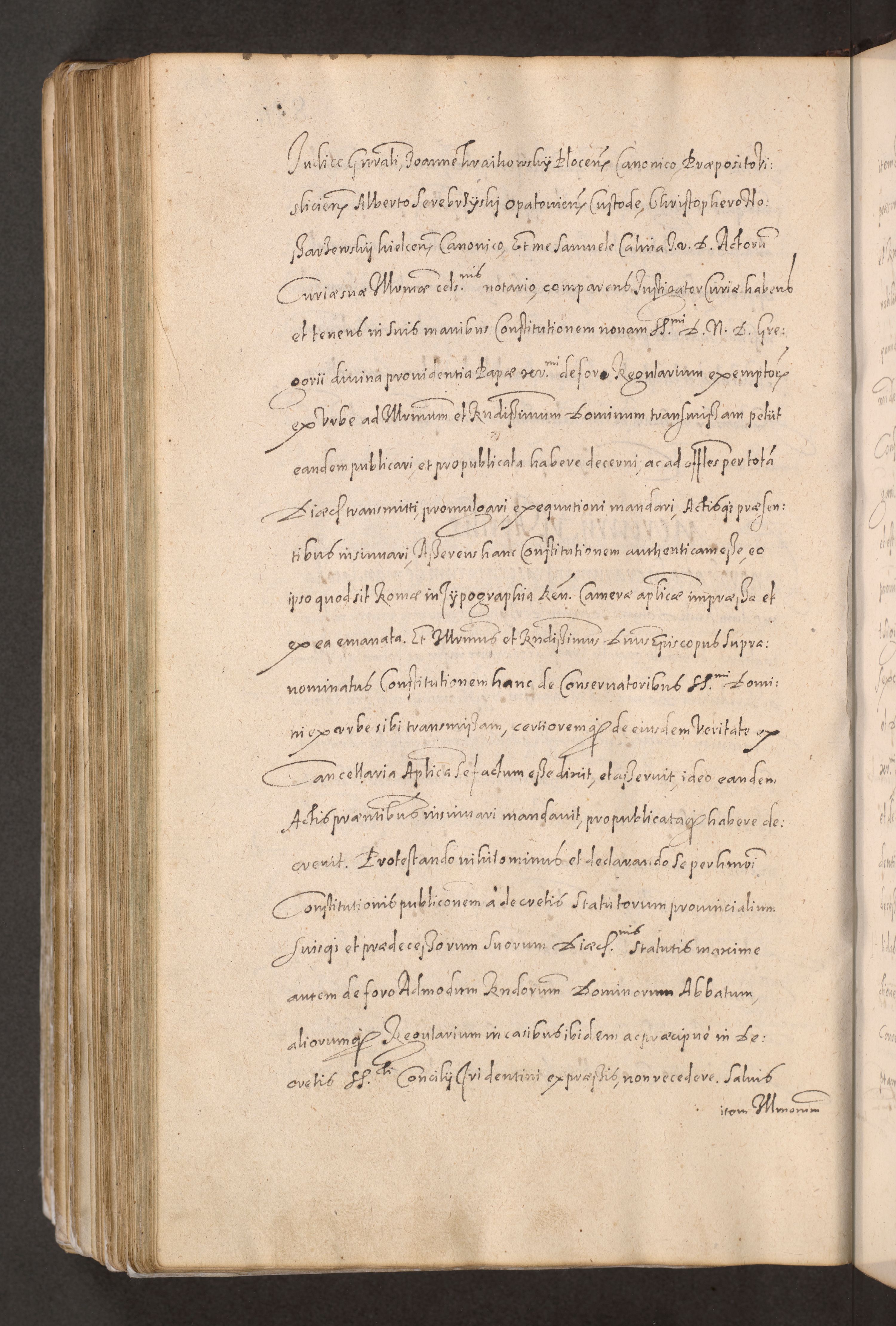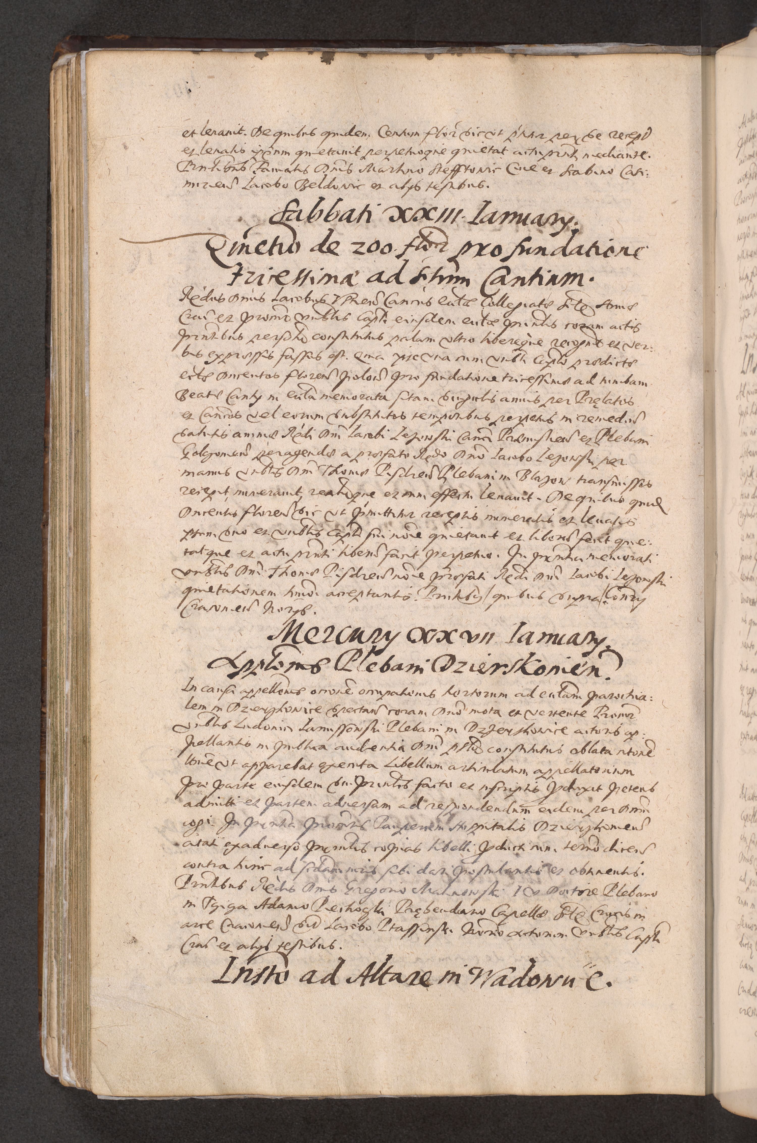 Acta actorum causarum obligationum institutionum decretorum constitutionum quietationum resignationum cissionum et atiaru obsernationum tam indiciariarum quam extra indiciariarum coram Admodum Reverendo Domino Joanne Zerzynski Canonico Vicario in Spiritualibus et Officiali generali Cracoviensis ad Annum Domini Millesimum Sextentissimum Vigesimum Indictione tertia Pontificatus SSmi D. N. D. Pauli Divina pronidentia Papae V. foeliciter moderni anno ipsins subfelici regimine Diocesis Cracoviensis Illustrissimi ac Reverendissimi D. N. D. Martini Szyszkowski Deigratia Episcopus Cracoviensis Ducis Severiensis in continuantur.