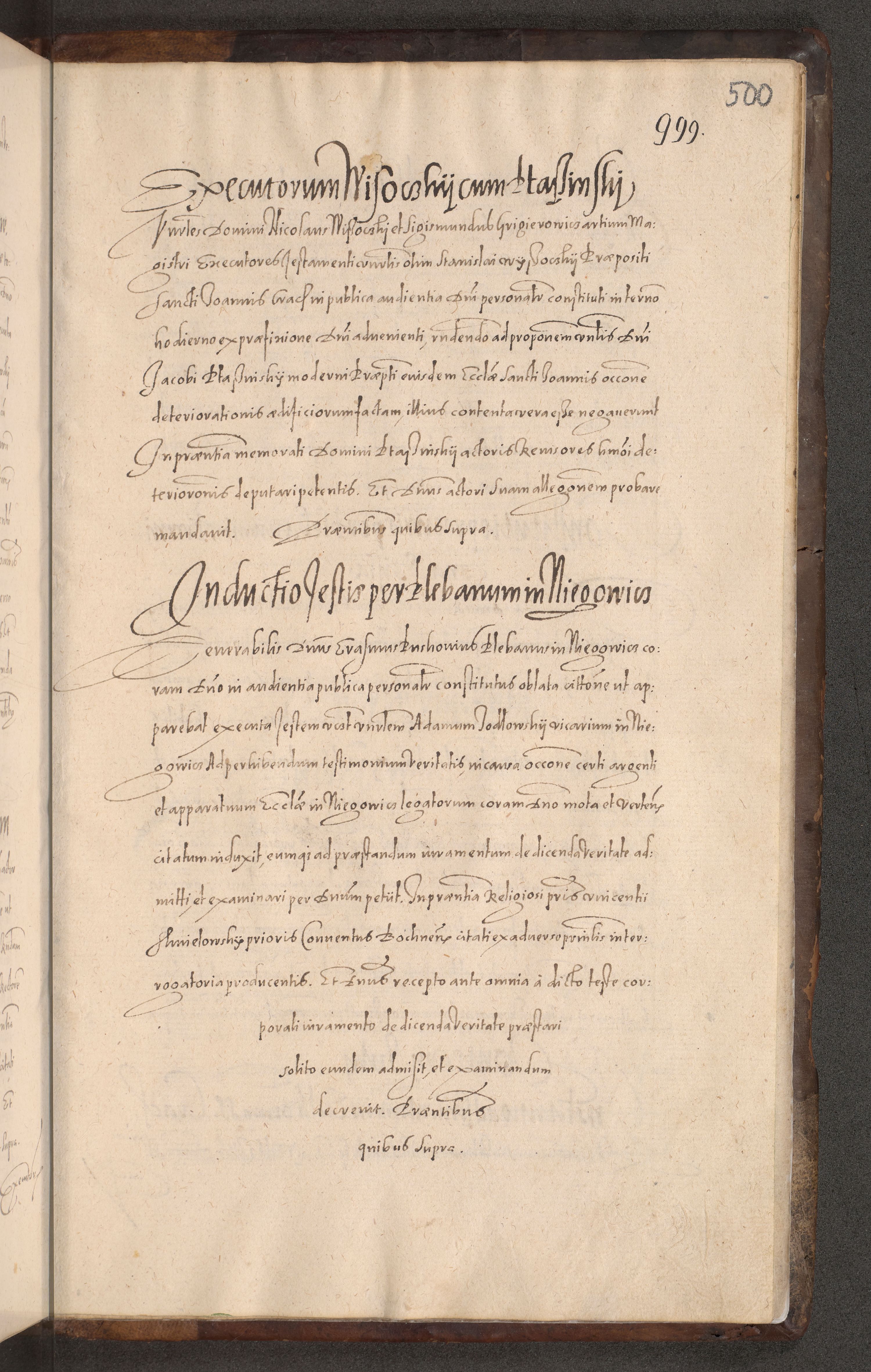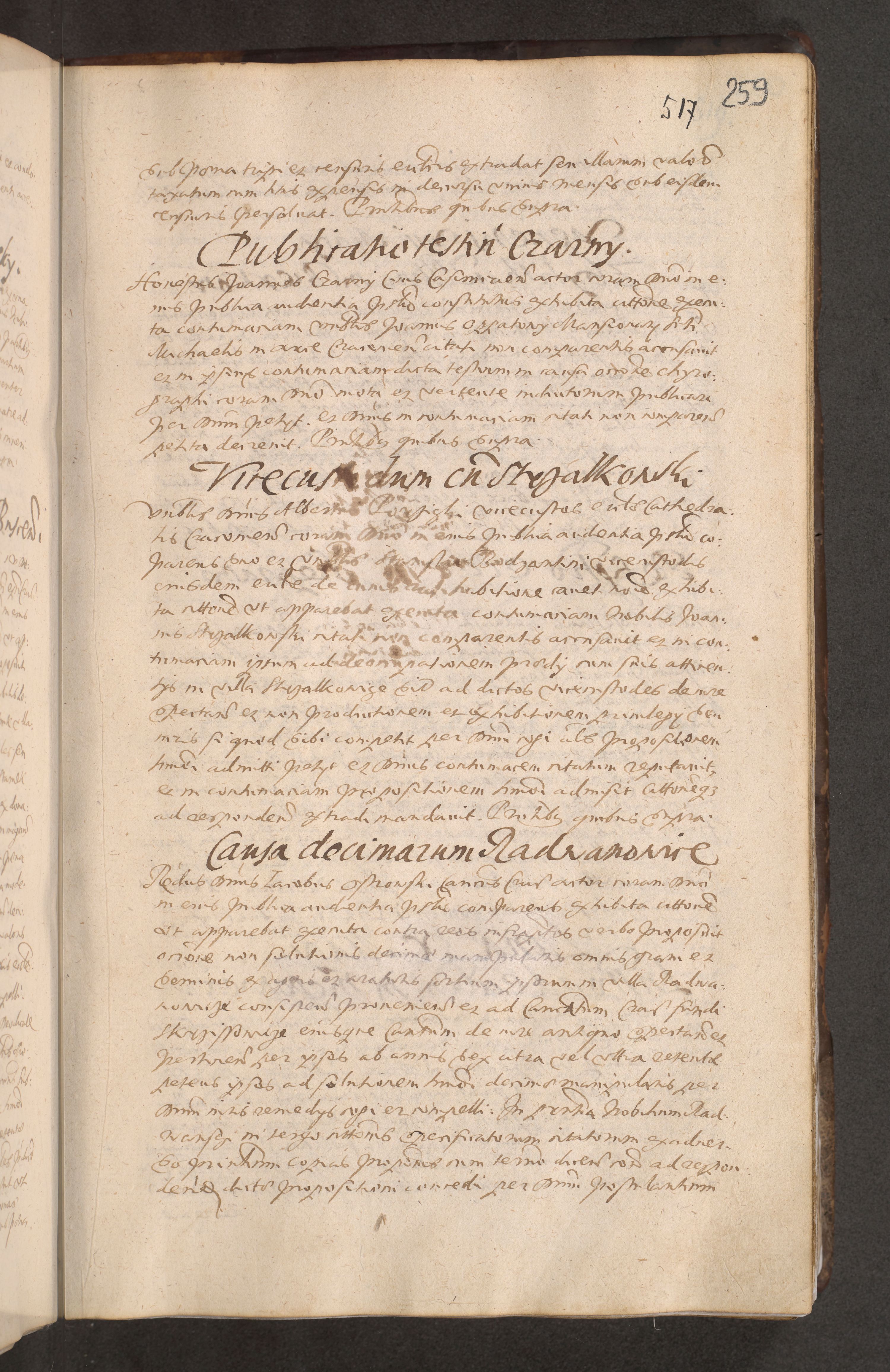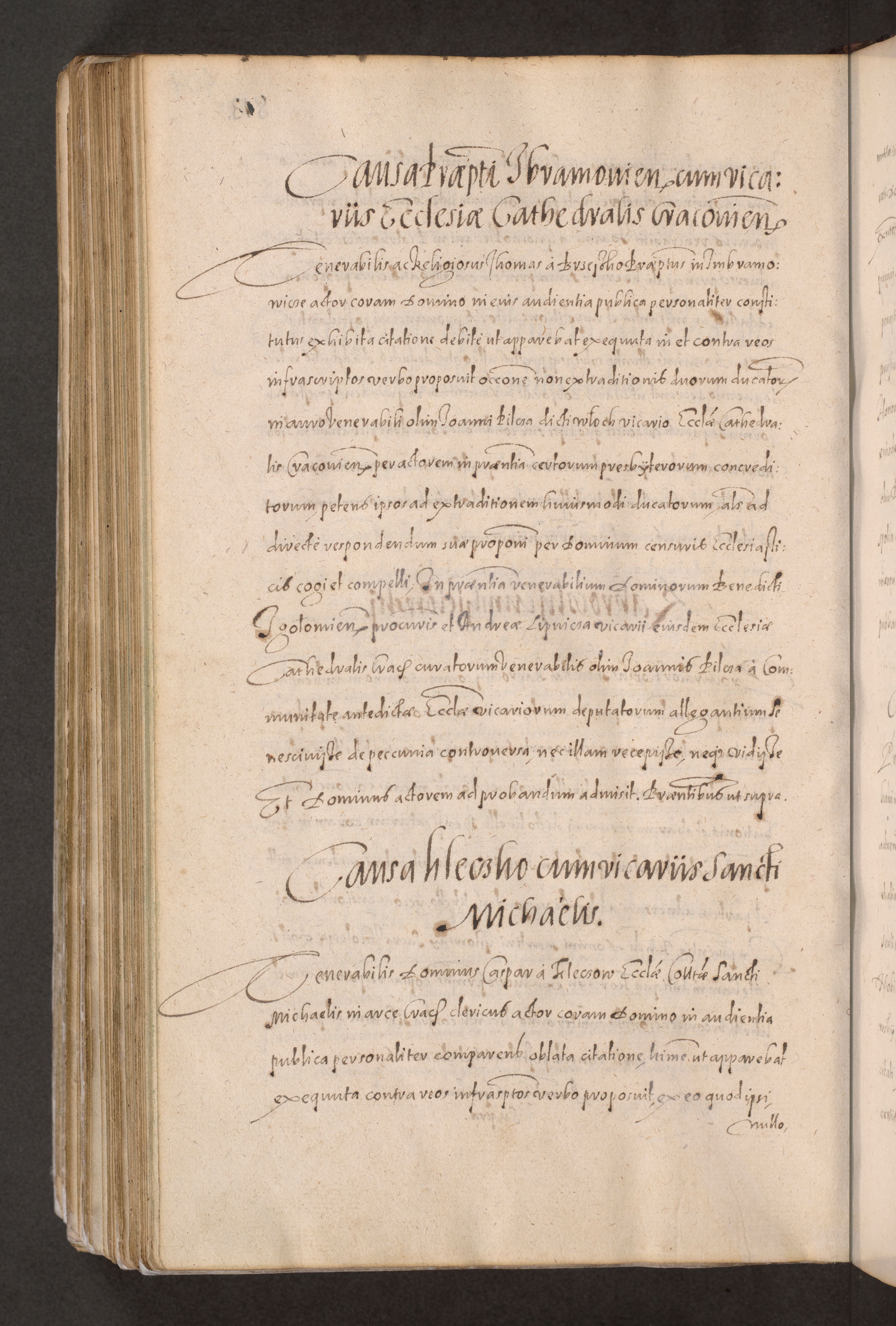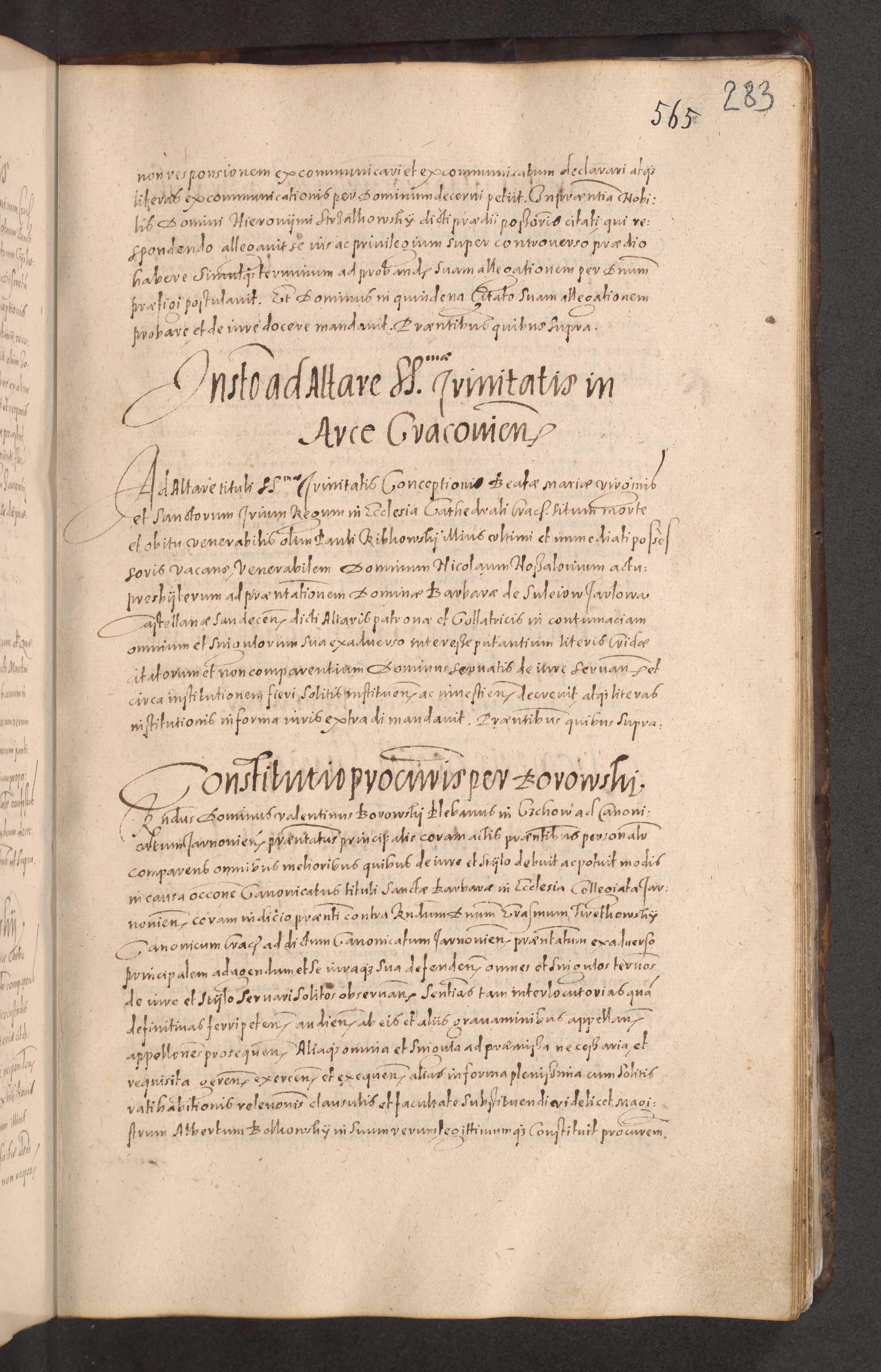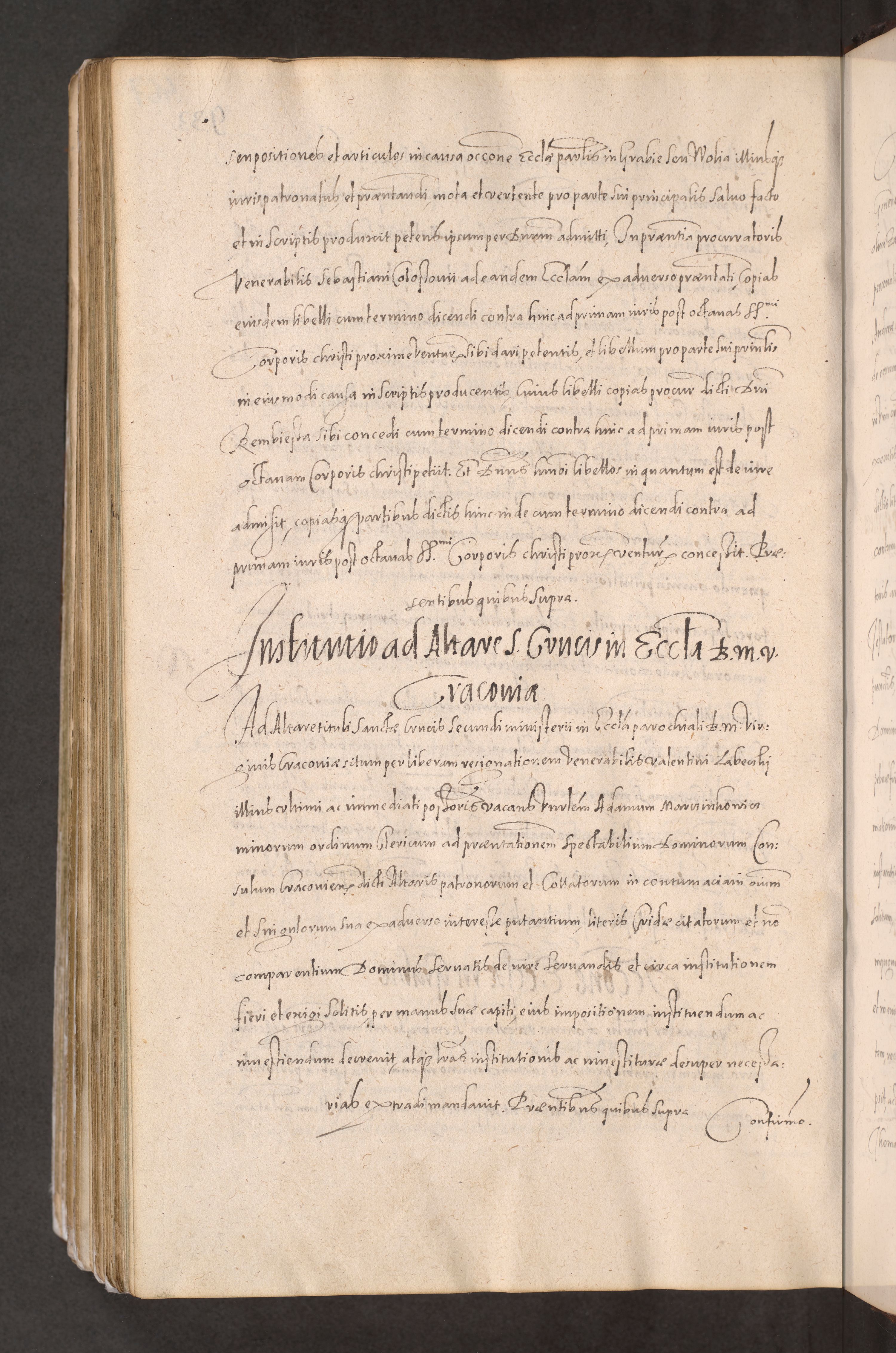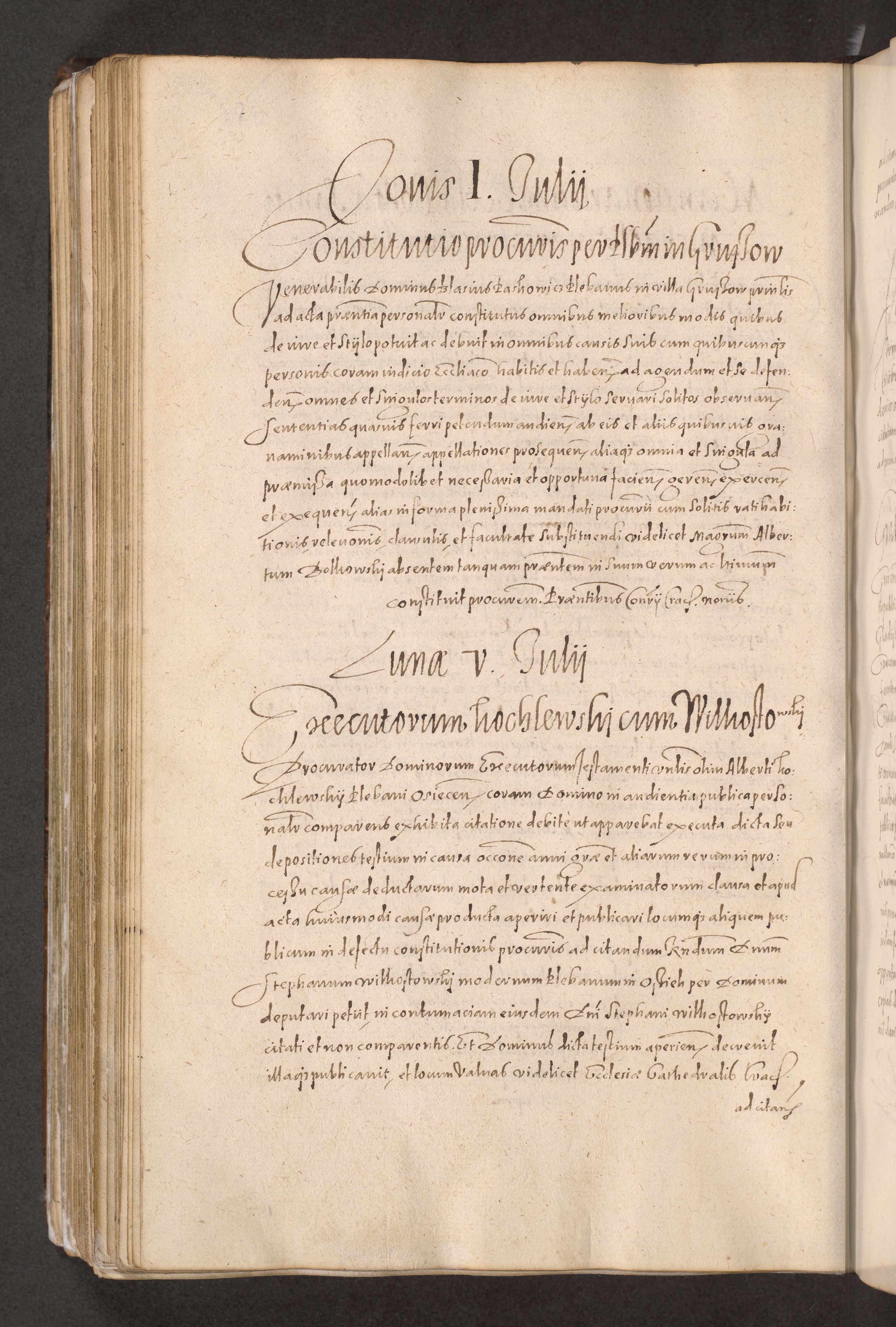 Acta actorum causarum obligationum institutionum decretorum constitutionum quietationum resignationum cissionum et atiaru obsernationum tam indiciariarum quam extra indiciariarum coram Admodum Reverendo Domino Joanne Zerzynski Canonico Vicario in Spiritualibus et Officiali generali Cracoviensis ad Annum Domini Millesimum Sextentissimum Vigesimum Indictione tertia Pontificatus SSmi D. N. D. Pauli Divina pronidentia Papae V. foeliciter moderni anno ipsins subfelici regimine Diocesis Cracoviensis Illustrissimi ac Reverendissimi D. N. D. Martini Szyszkowski Deigratia Episcopus Cracoviensis Ducis Severiensis in continuantur.