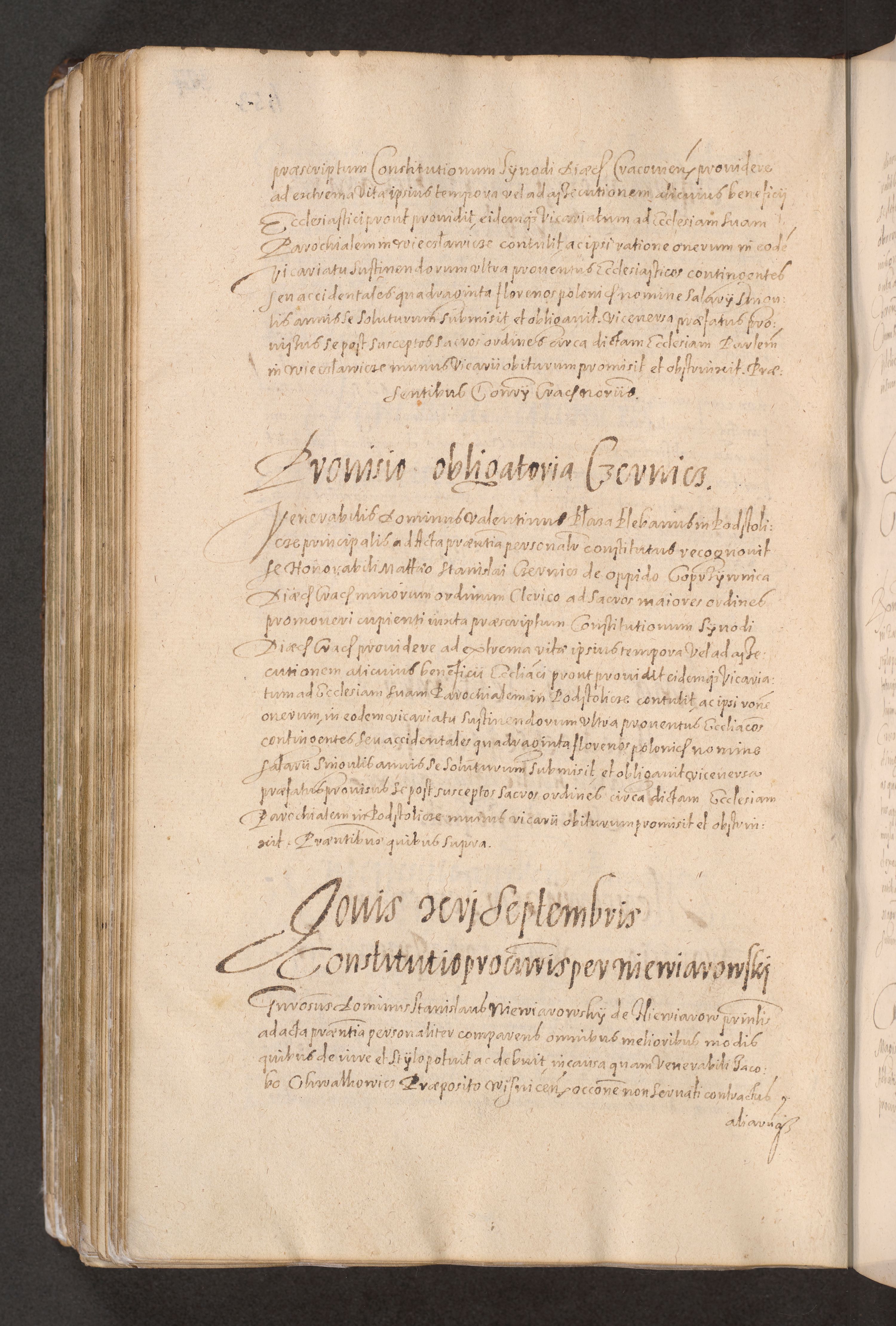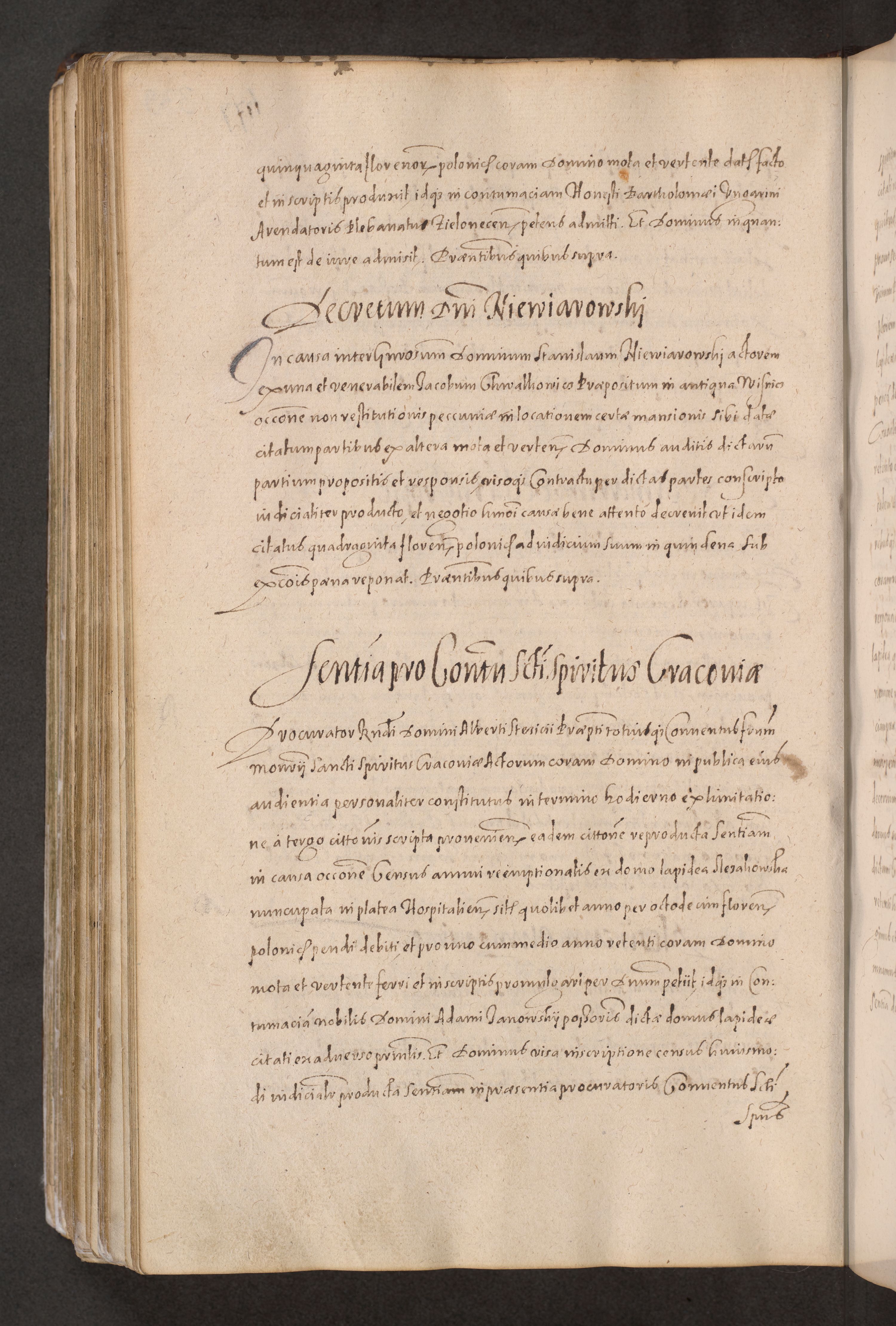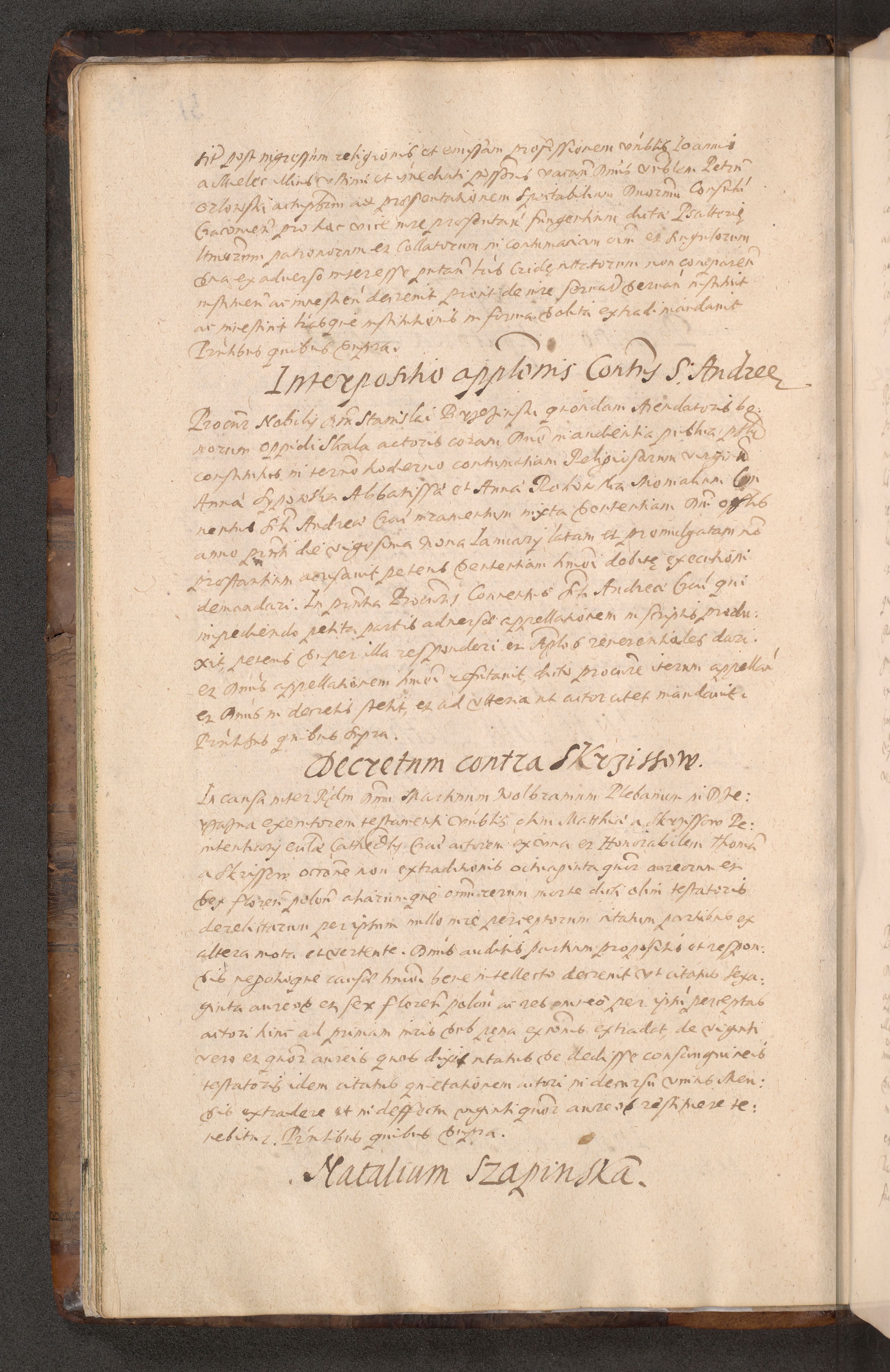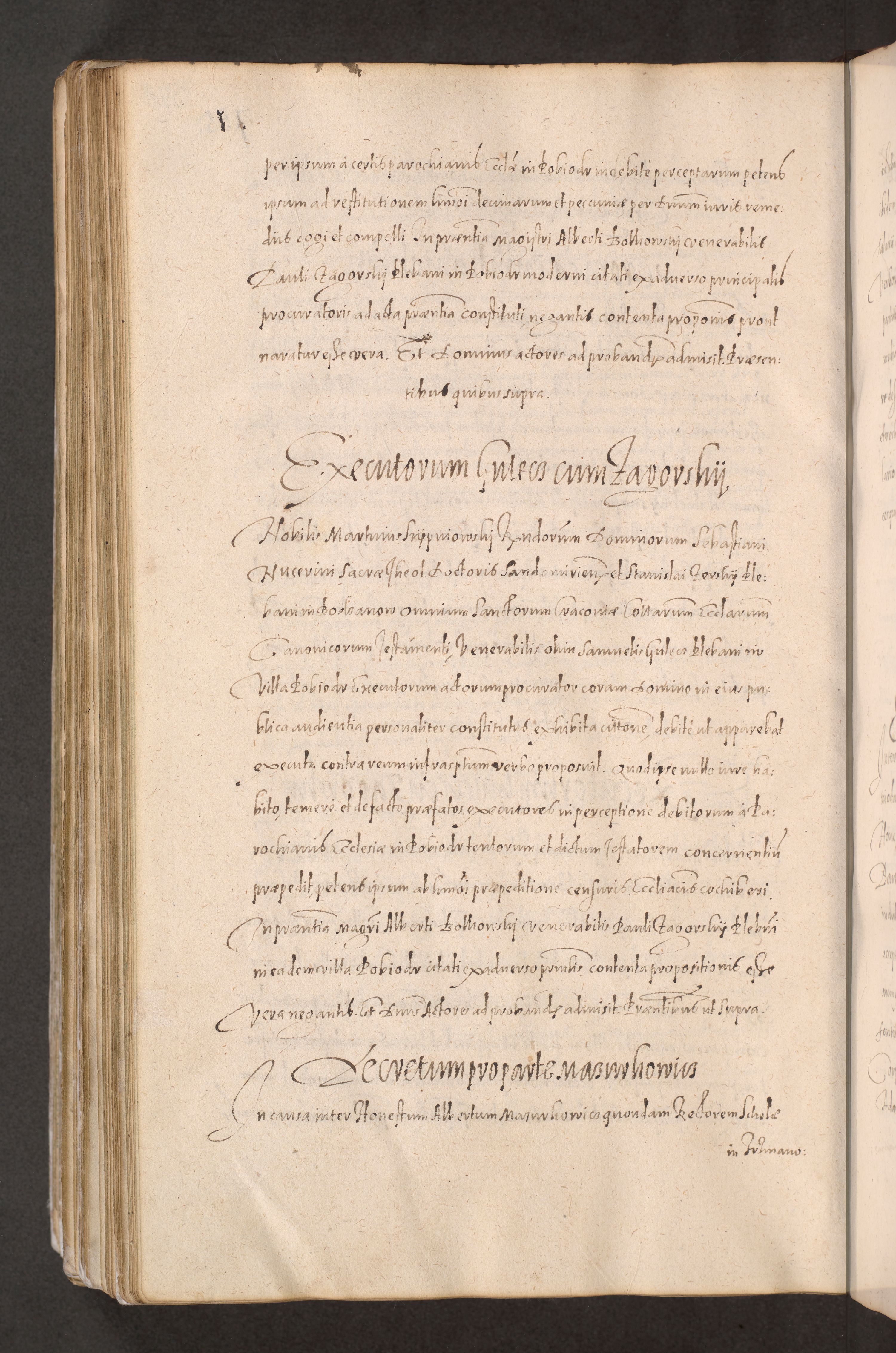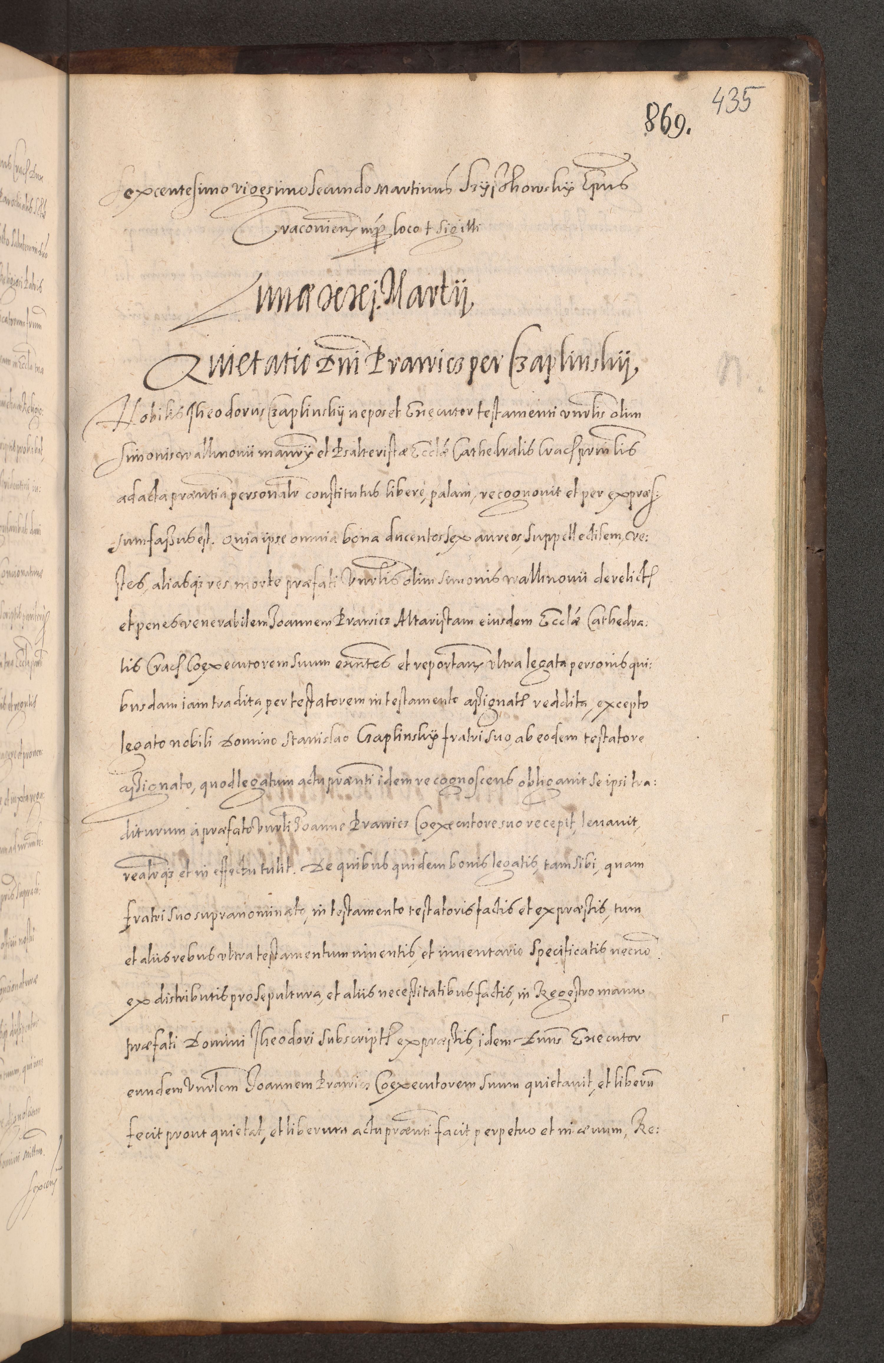 Acta actorum causarum obligationum institutionum decretorum constitutionum quietationum resignationum cissionum et atiaru obsernationum tam indiciariarum quam extra indiciariarum coram Admodum Reverendo Domino Joanne Zerzynski Canonico Vicario in Spiritualibus et Officiali generali Cracoviensis ad Annum Domini Millesimum Sextentissimum Vigesimum Indictione tertia Pontificatus SSmi D. N. D. Pauli Divina pronidentia Papae V. foeliciter moderni anno ipsins subfelici regimine Diocesis Cracoviensis Illustrissimi ac Reverendissimi D. N. D. Martini Szyszkowski Deigratia Episcopus Cracoviensis Ducis Severiensis in continuantur.