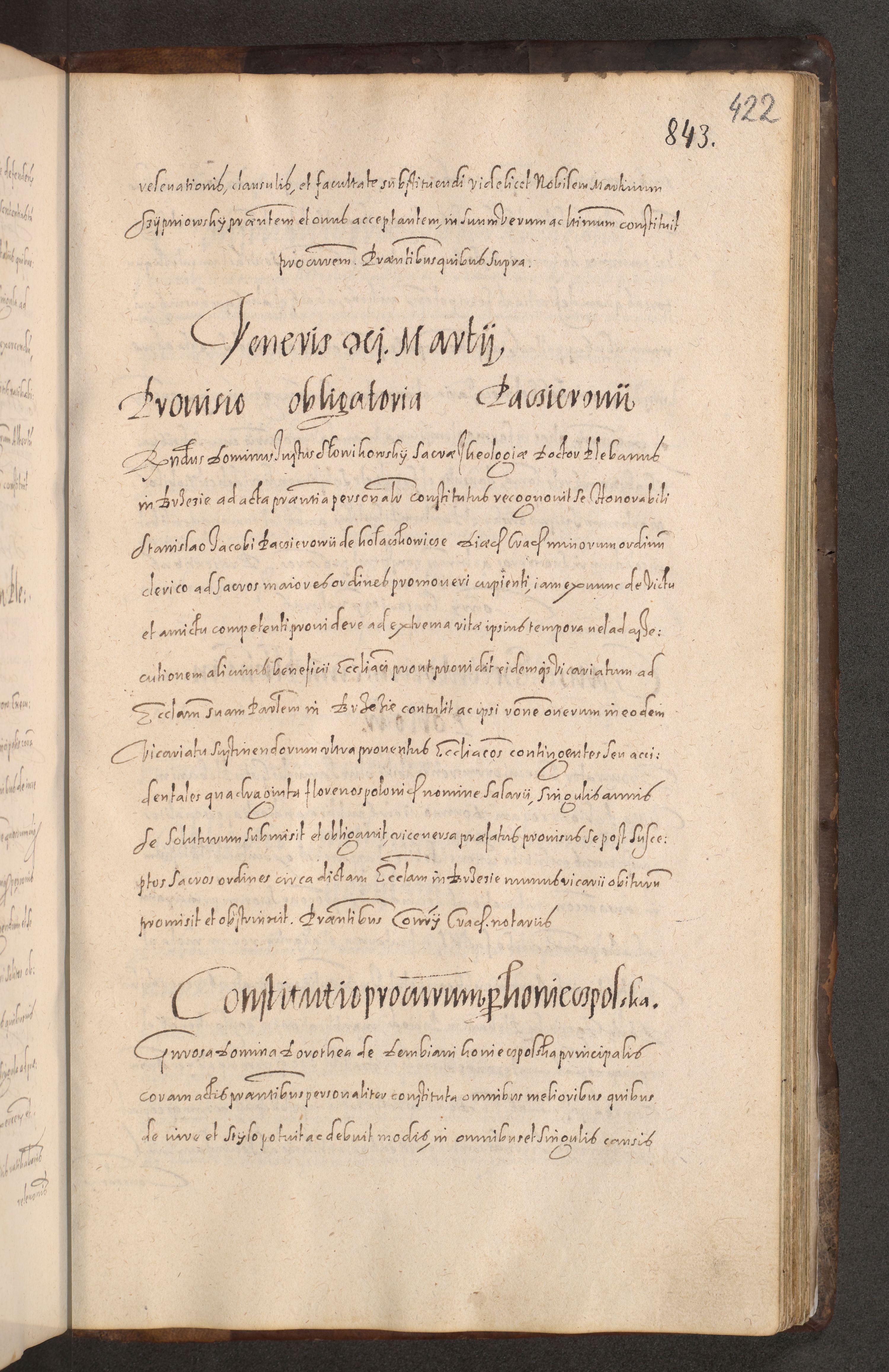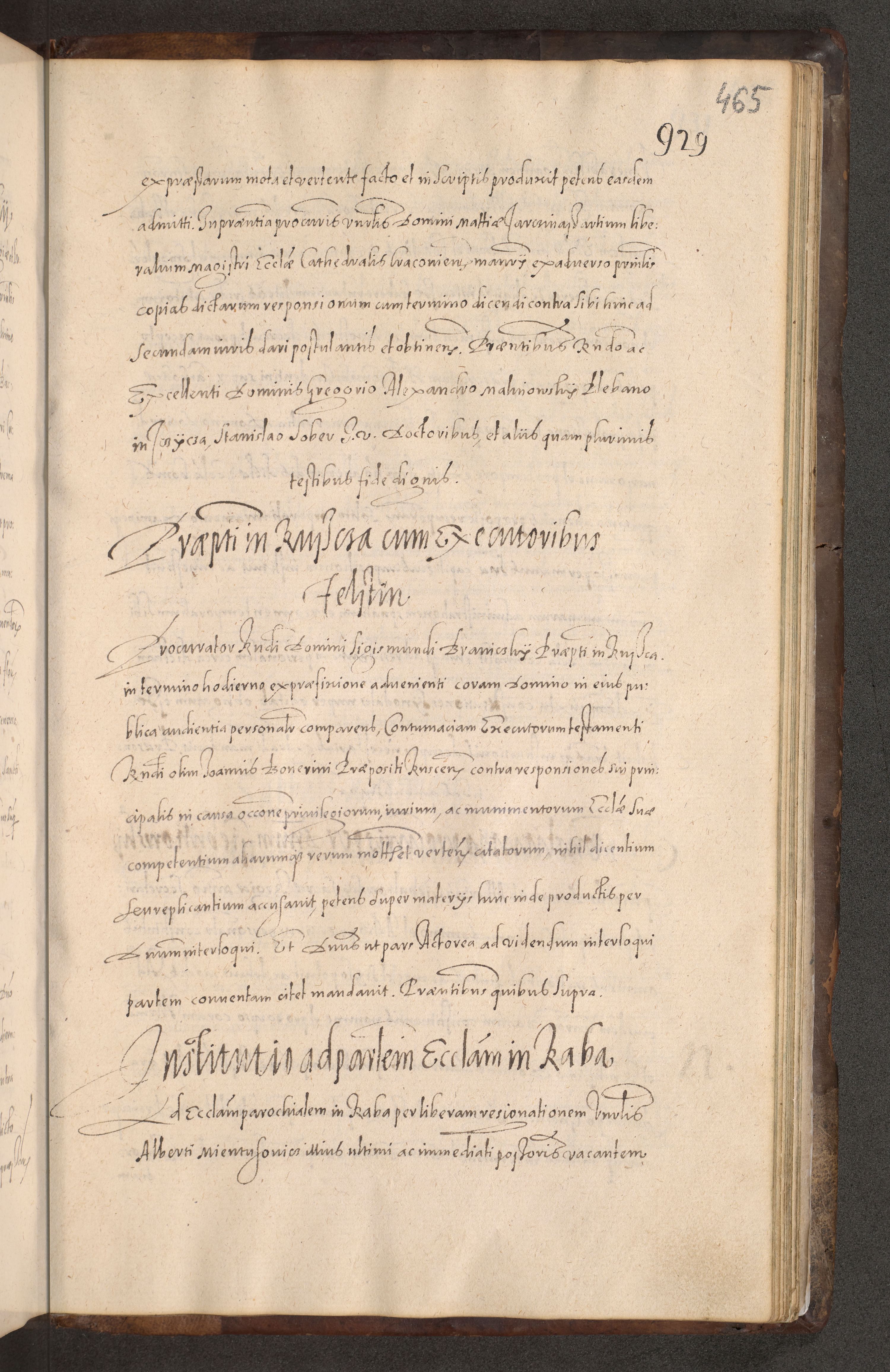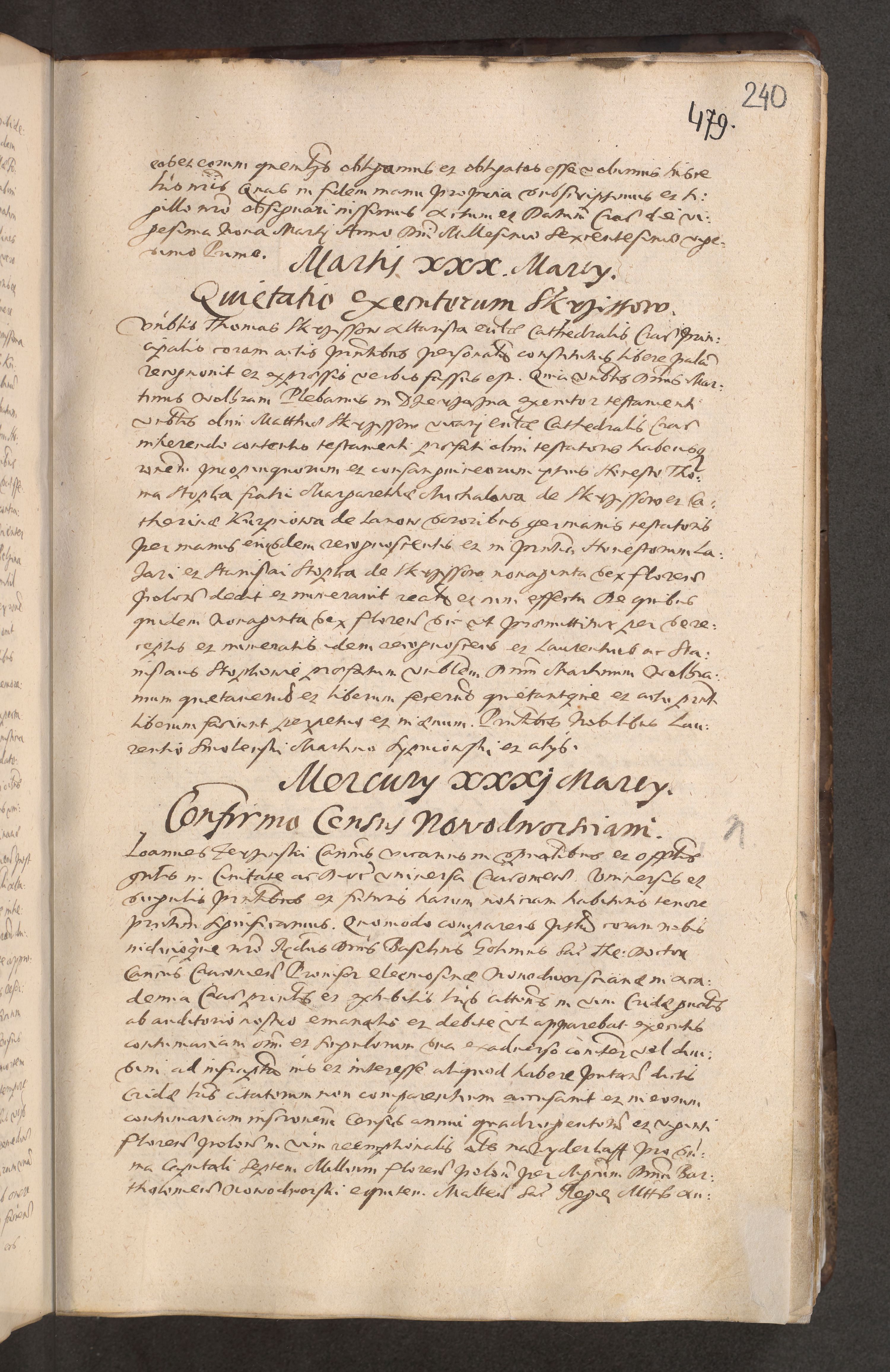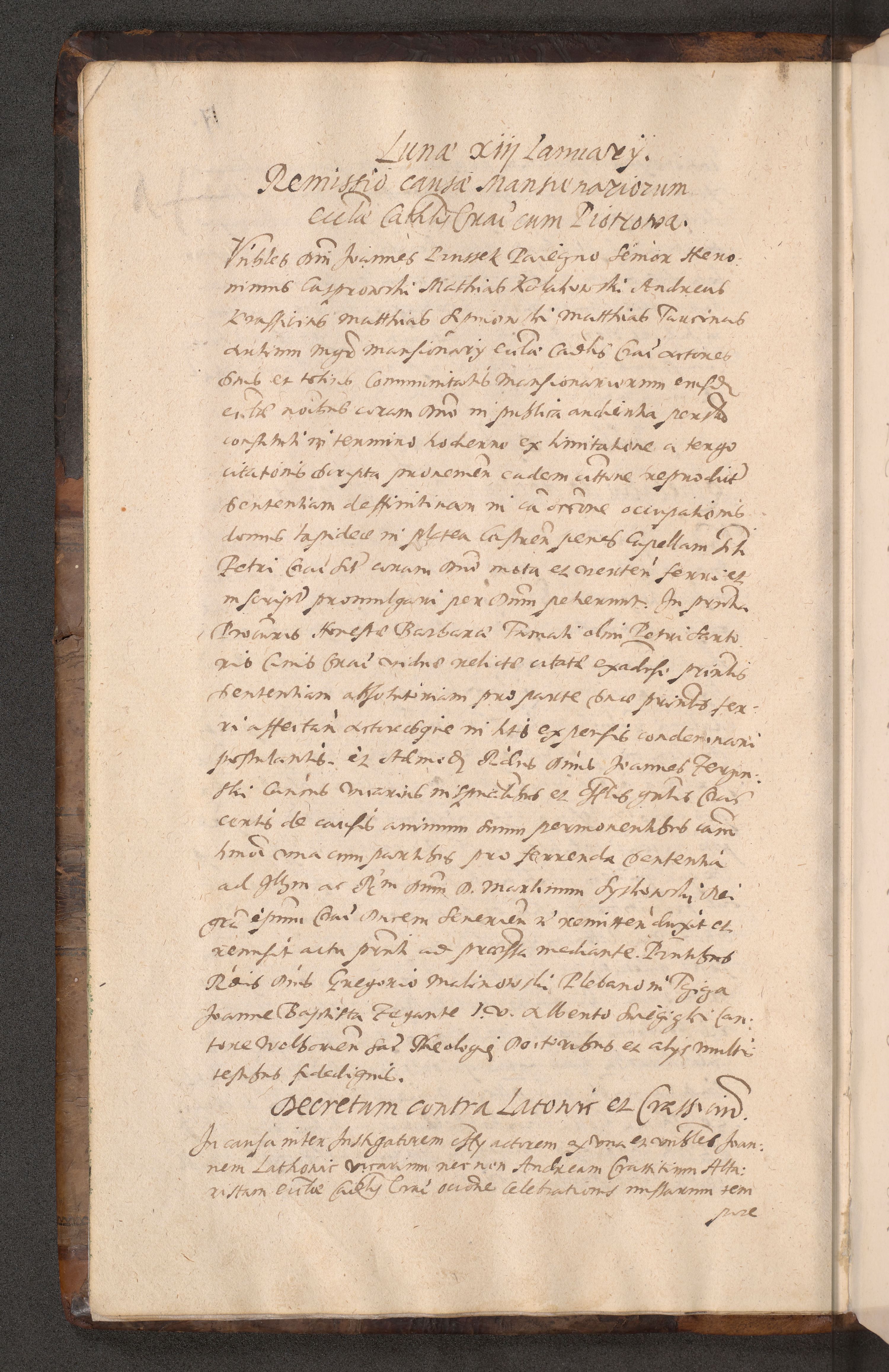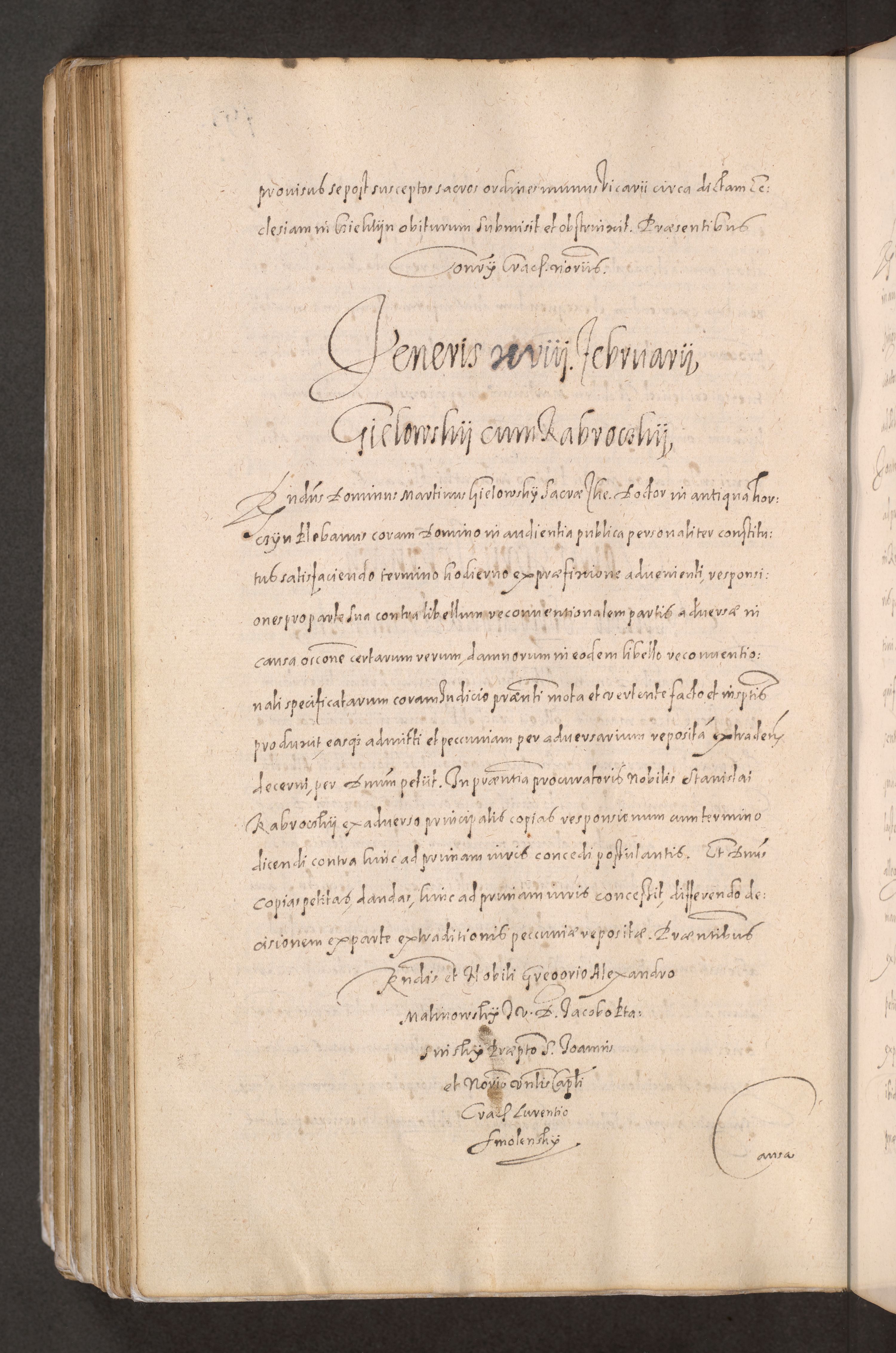 Acta actorum causarum obligationum institutionum decretorum constitutionum quietationum resignationum cissionum et atiaru obsernationum tam indiciariarum quam extra indiciariarum coram Admodum Reverendo Domino Joanne Zerzynski Canonico Vicario in Spiritualibus et Officiali generali Cracoviensis ad Annum Domini Millesimum Sextentissimum Vigesimum Indictione tertia Pontificatus SSmi D. N. D. Pauli Divina pronidentia Papae V. foeliciter moderni anno ipsins subfelici regimine Diocesis Cracoviensis Illustrissimi ac Reverendissimi D. N. D. Martini Szyszkowski Deigratia Episcopus Cracoviensis Ducis Severiensis in continuantur.