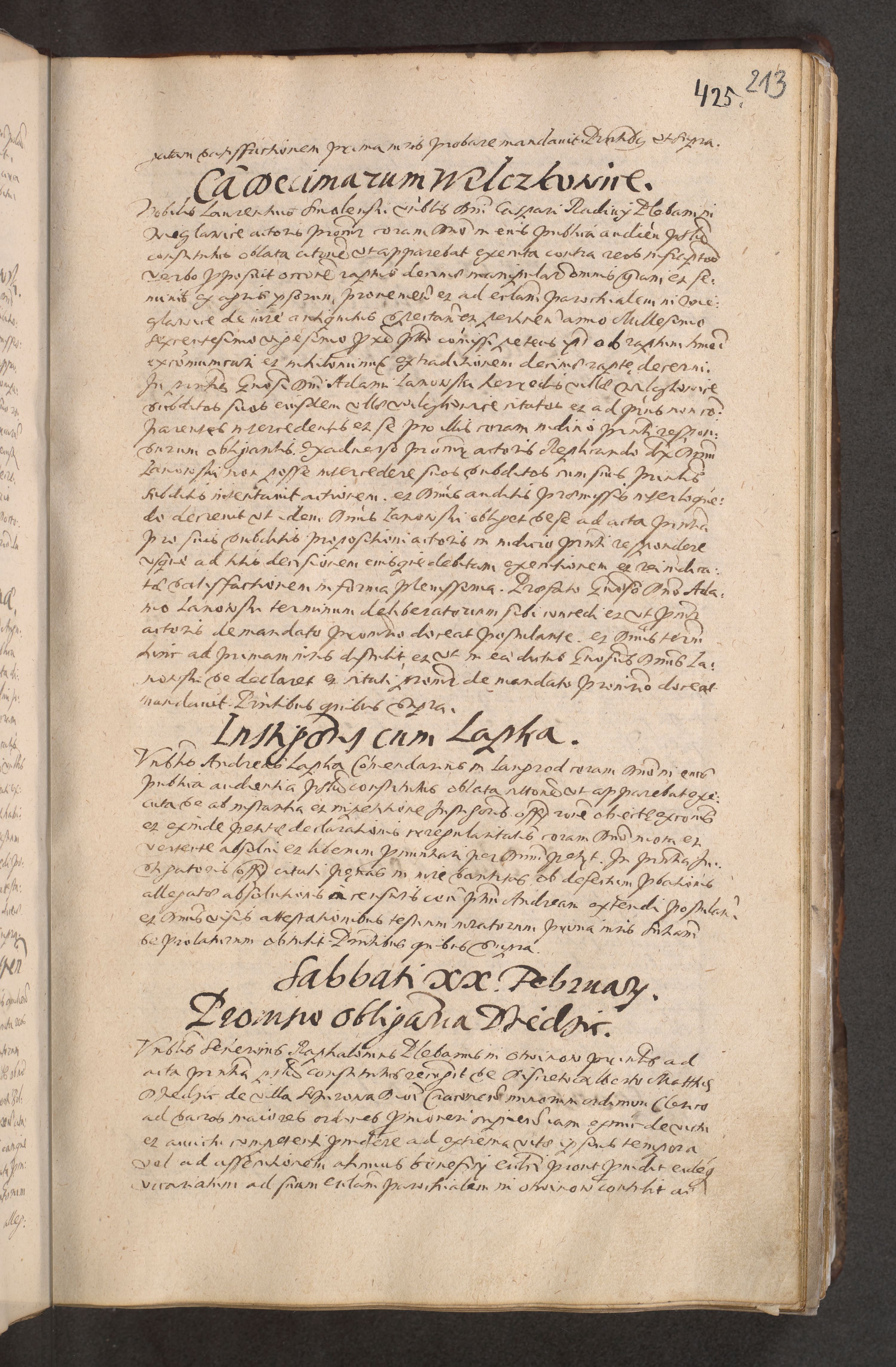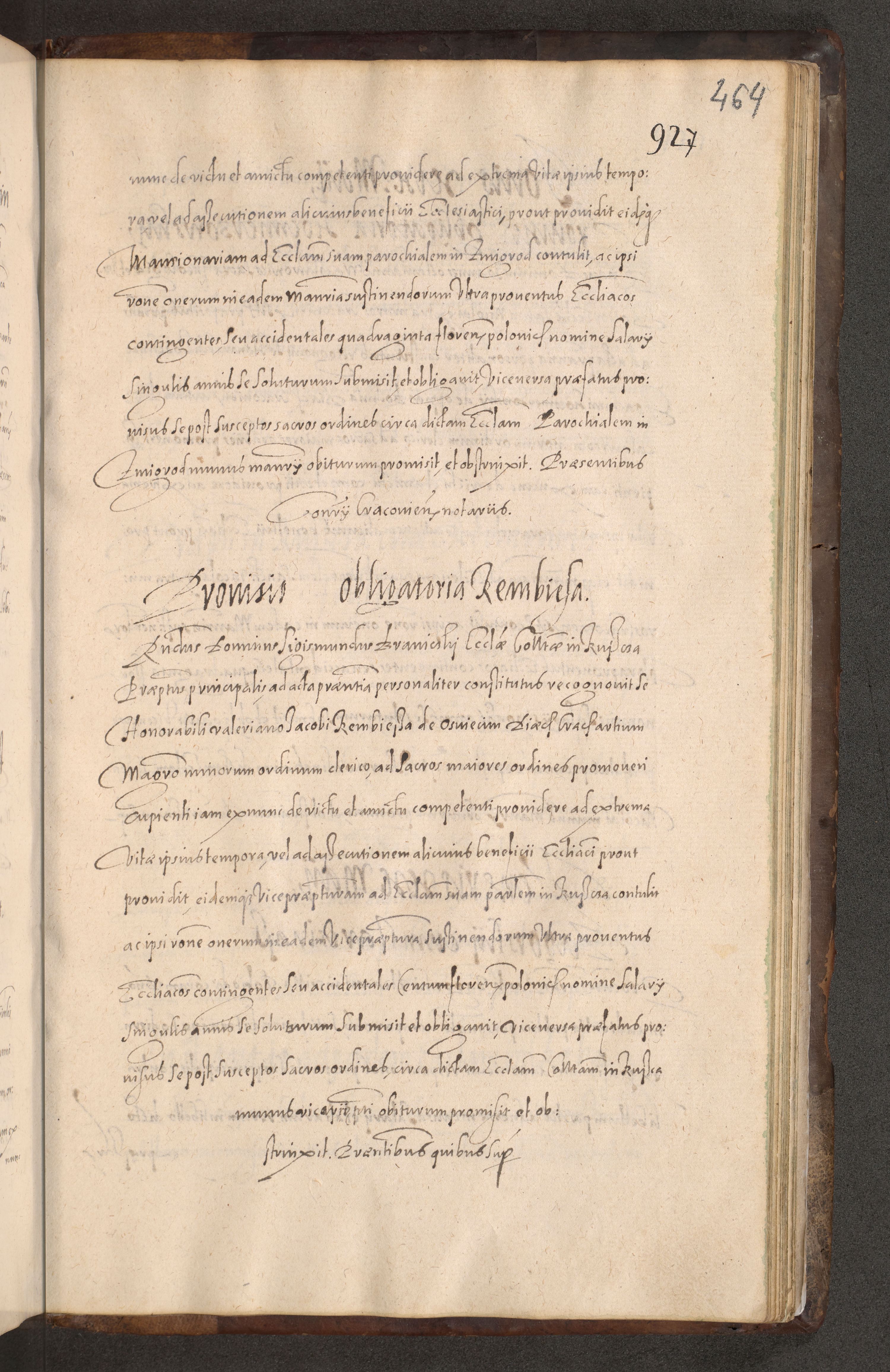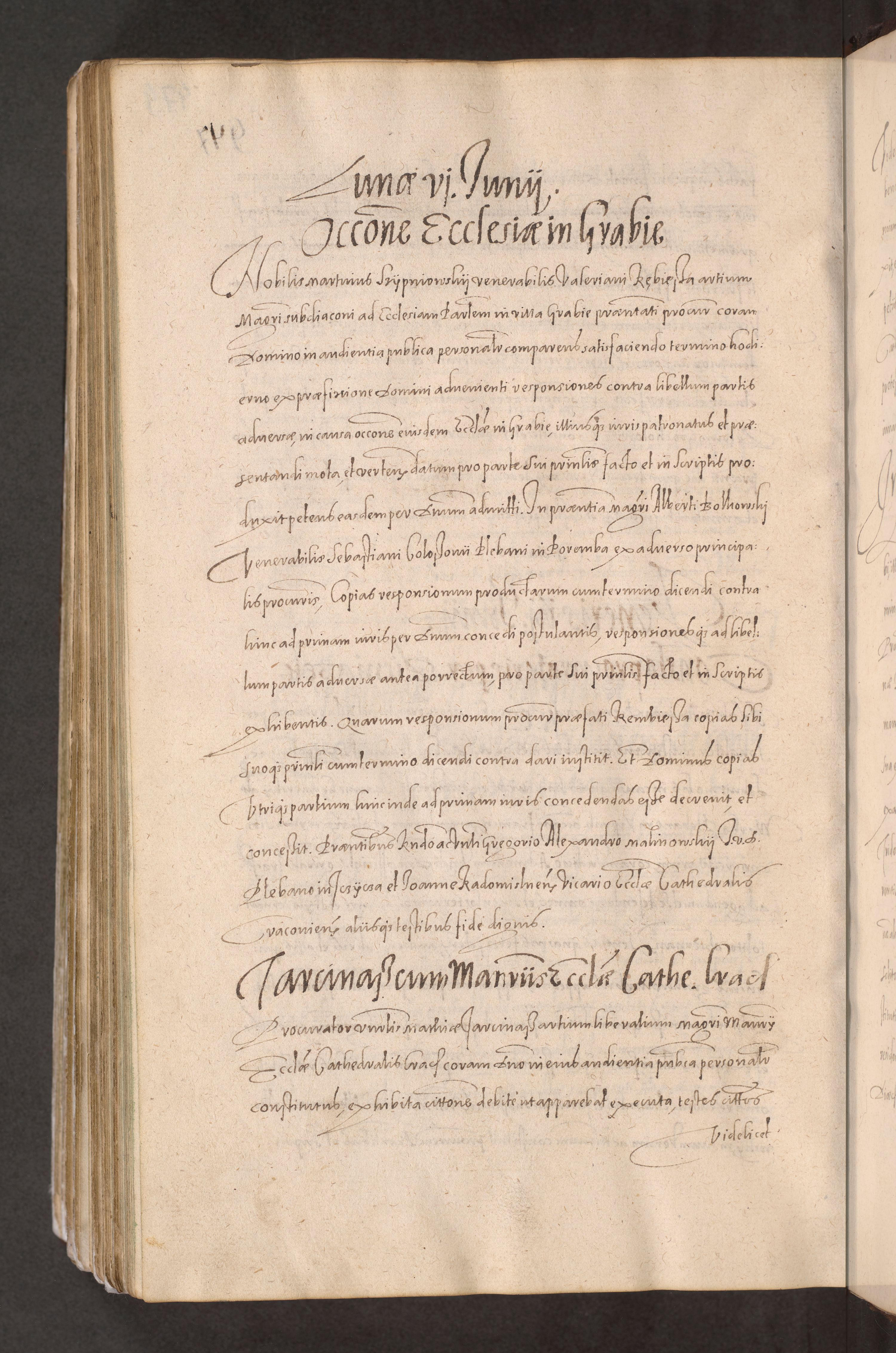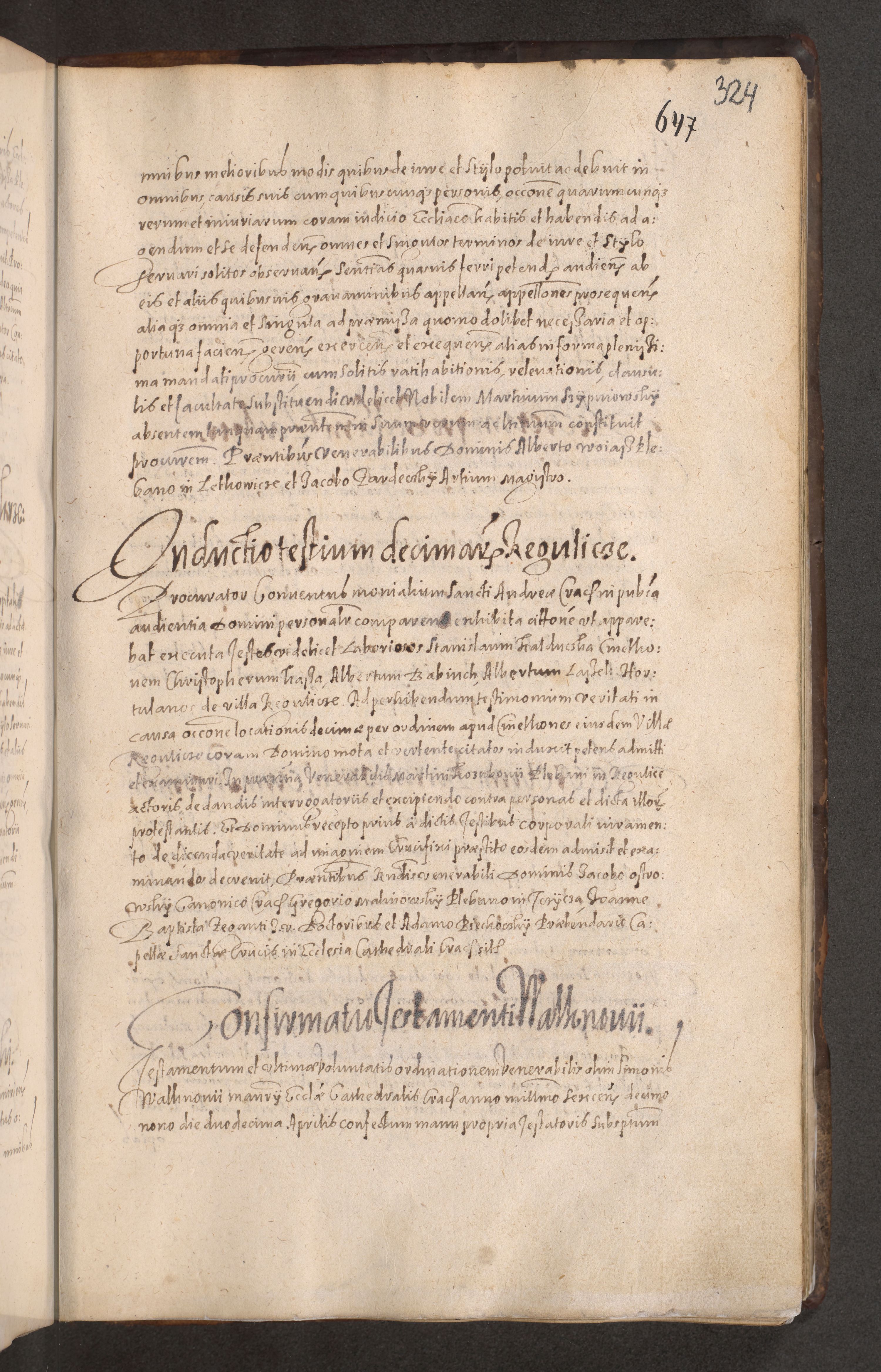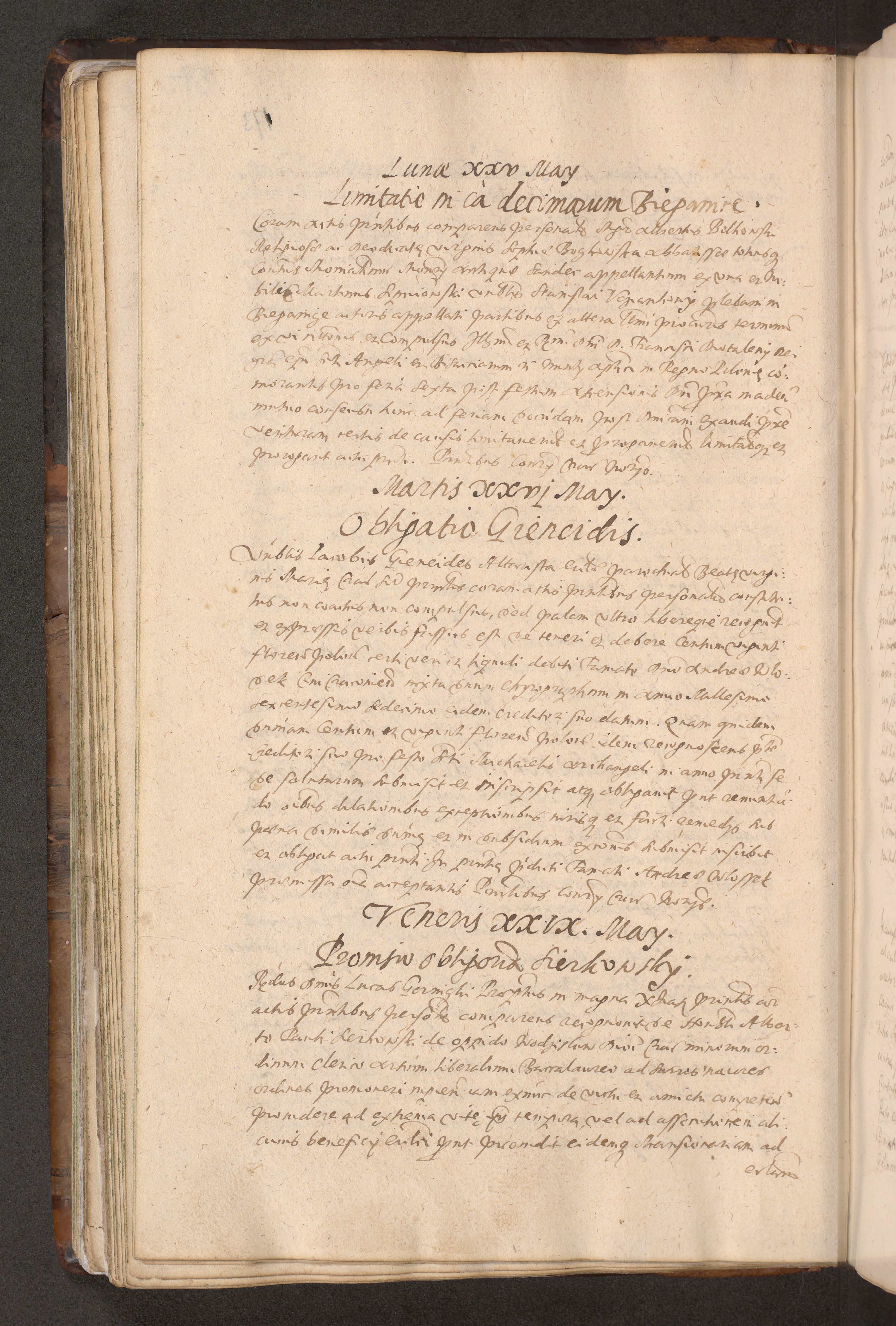 Acta actorum causarum obligationum institutionum decretorum constitutionum quietationum resignationum cissionum et atiaru obsernationum tam indiciariarum quam extra indiciariarum coram Admodum Reverendo Domino Joanne Zerzynski Canonico Vicario in Spiritualibus et Officiali generali Cracoviensis ad Annum Domini Millesimum Sextentissimum Vigesimum Indictione tertia Pontificatus SSmi D. N. D. Pauli Divina pronidentia Papae V. foeliciter moderni anno ipsins subfelici regimine Diocesis Cracoviensis Illustrissimi ac Reverendissimi D. N. D. Martini Szyszkowski Deigratia Episcopus Cracoviensis Ducis Severiensis in continuantur.