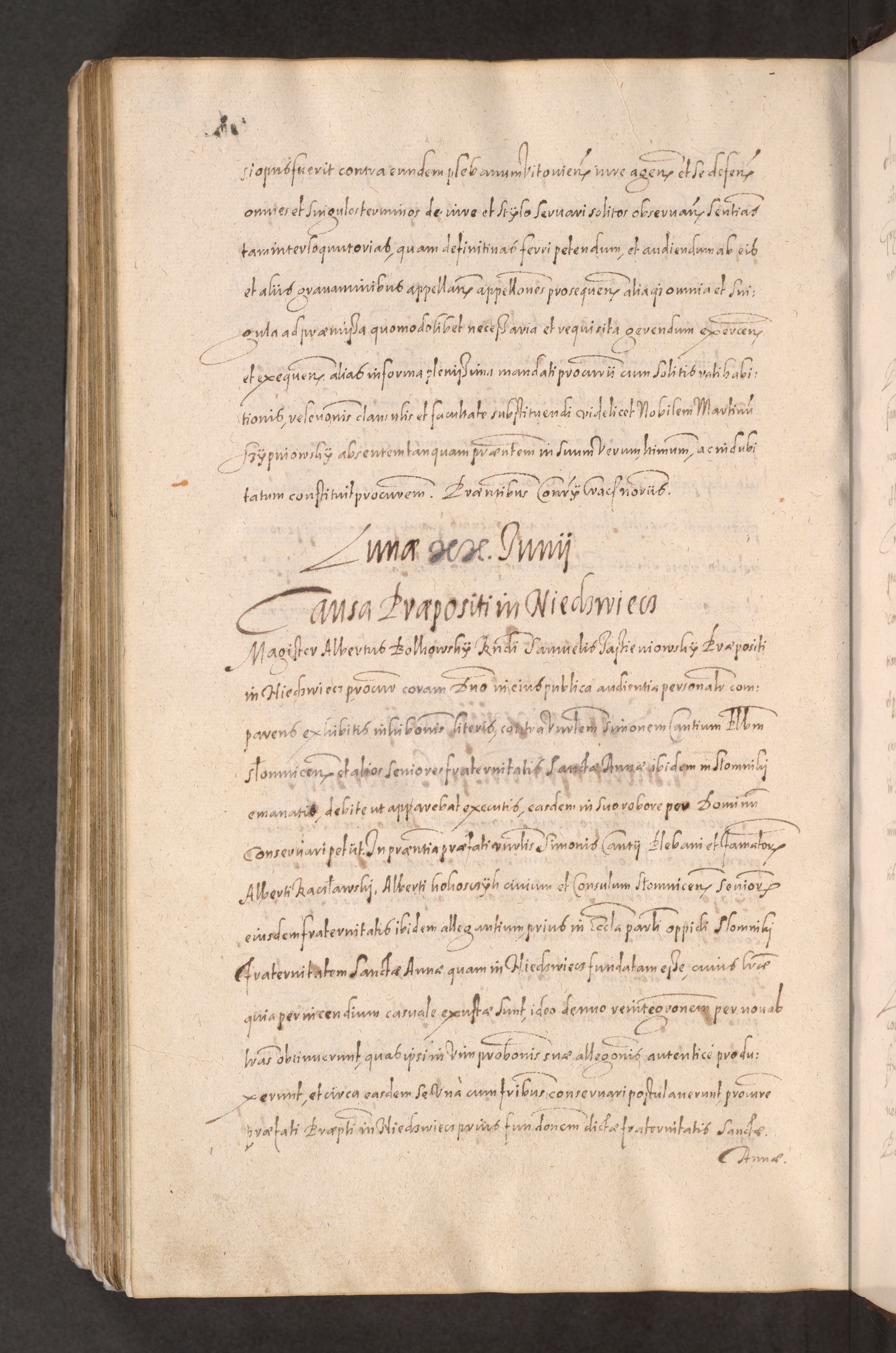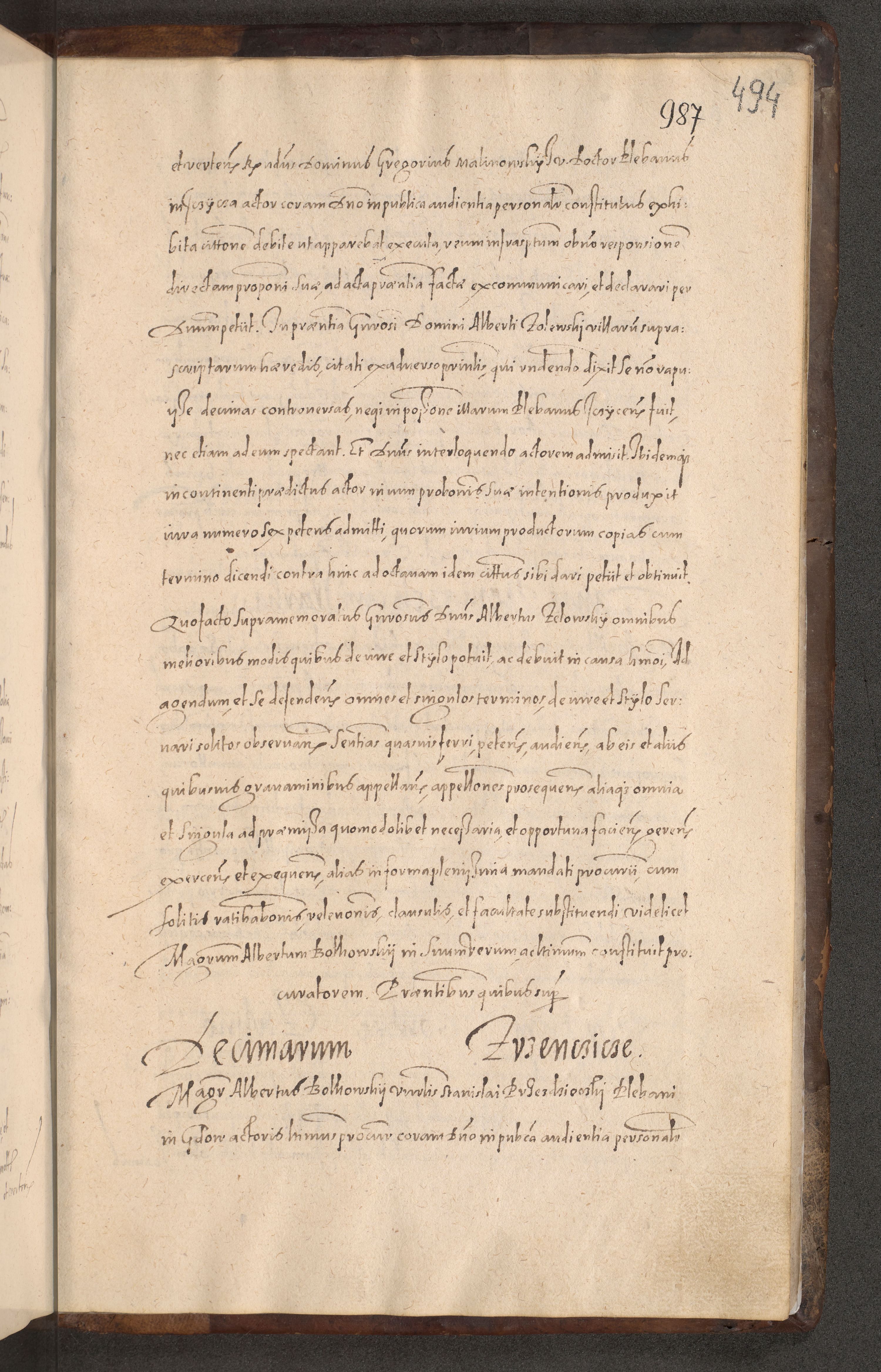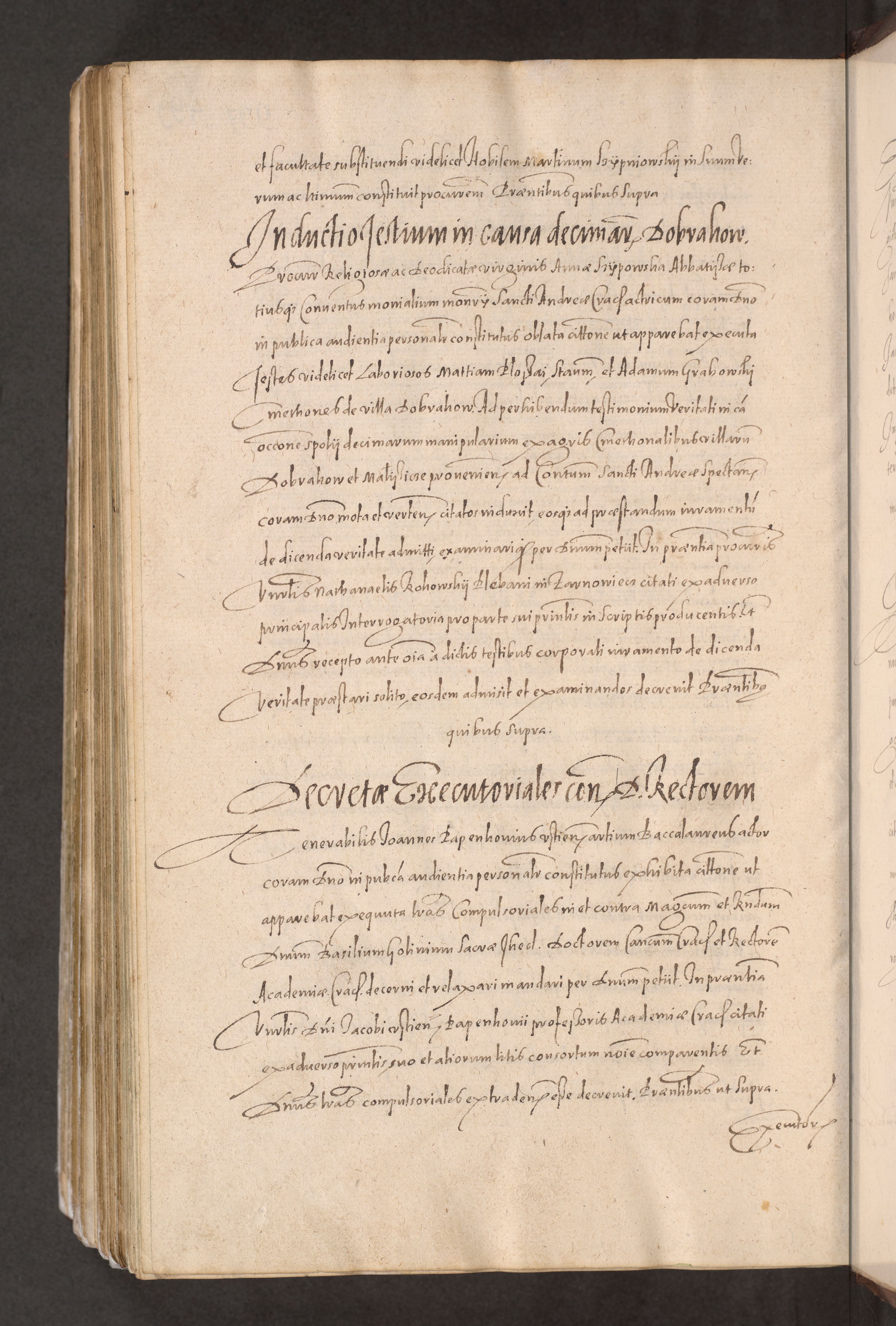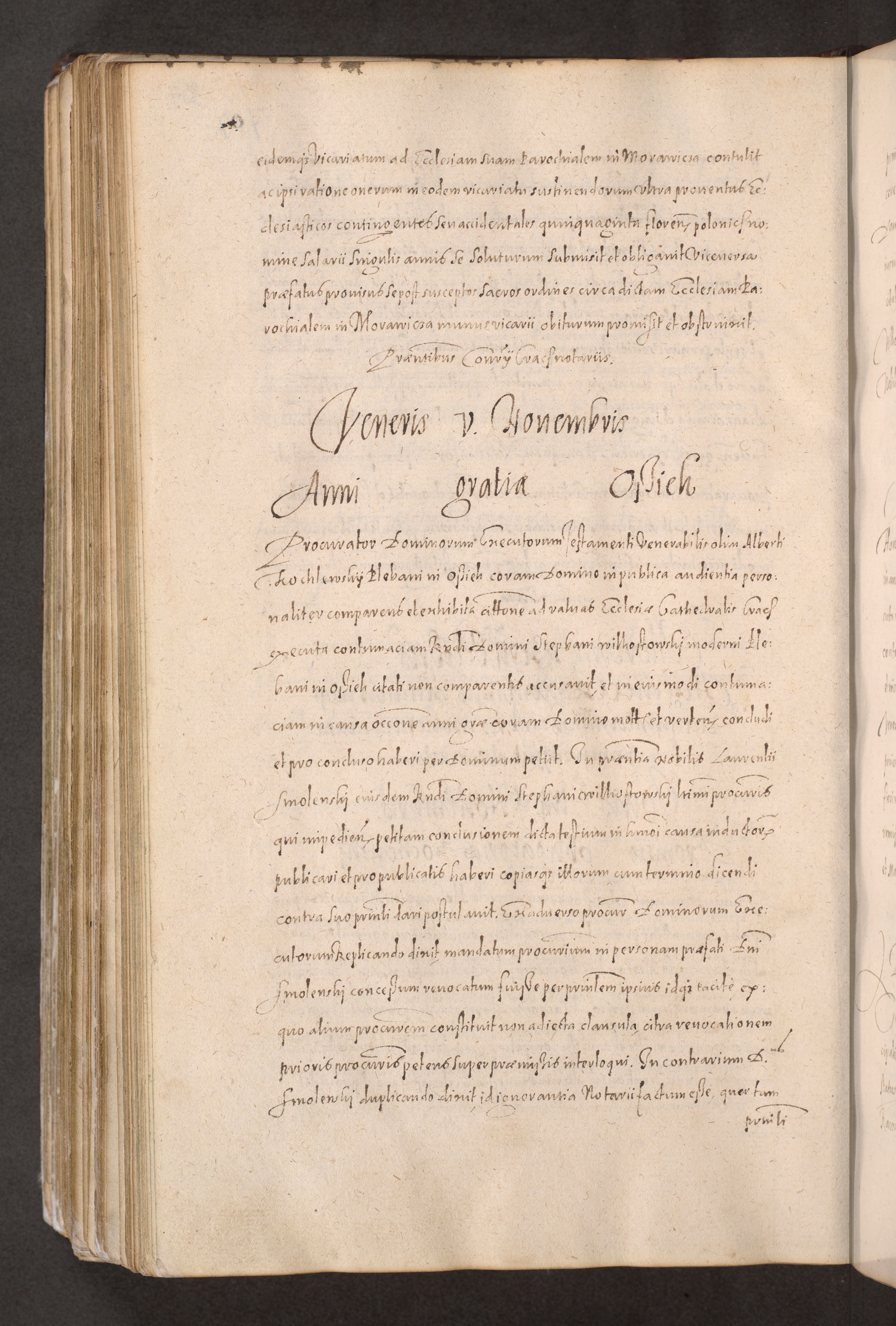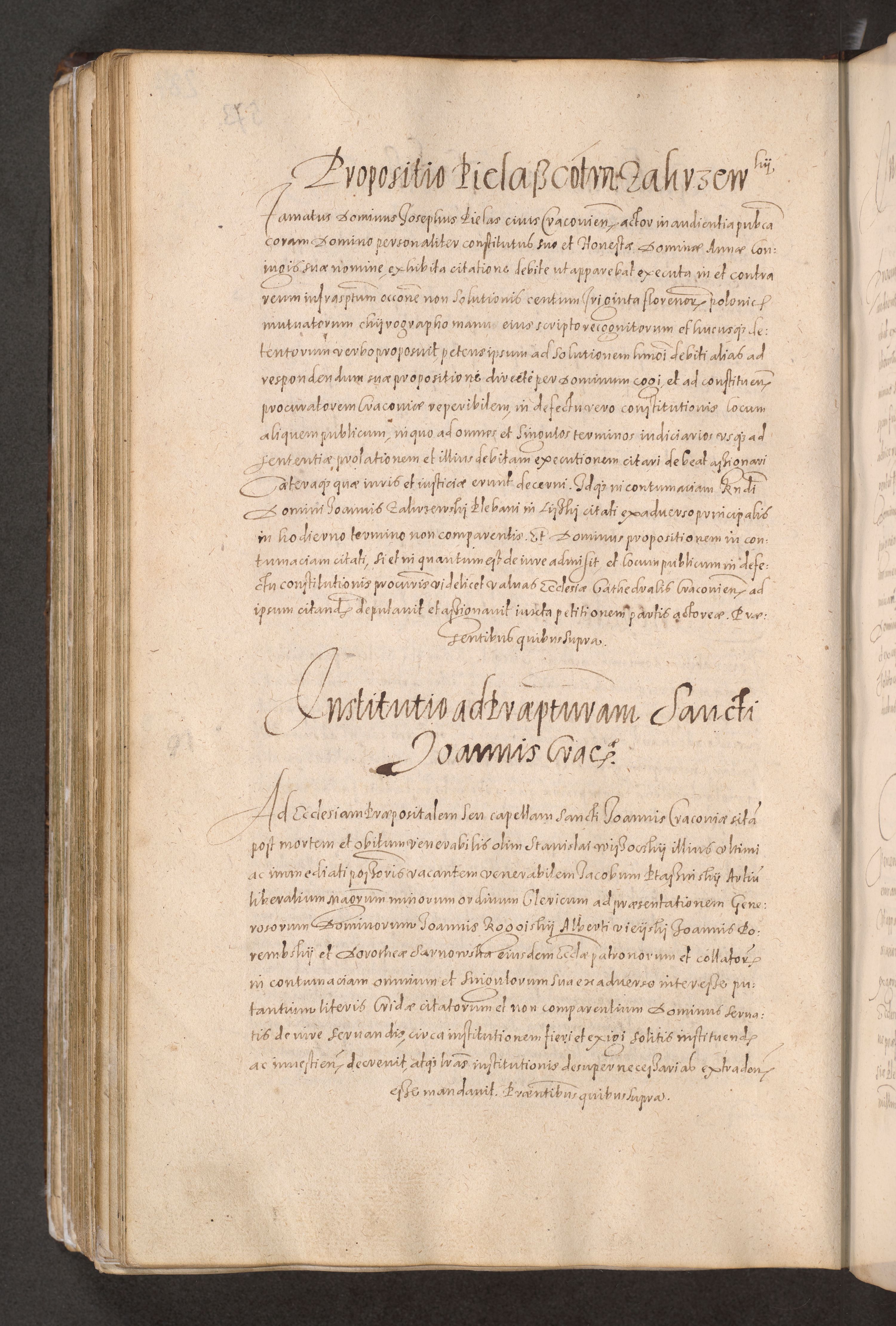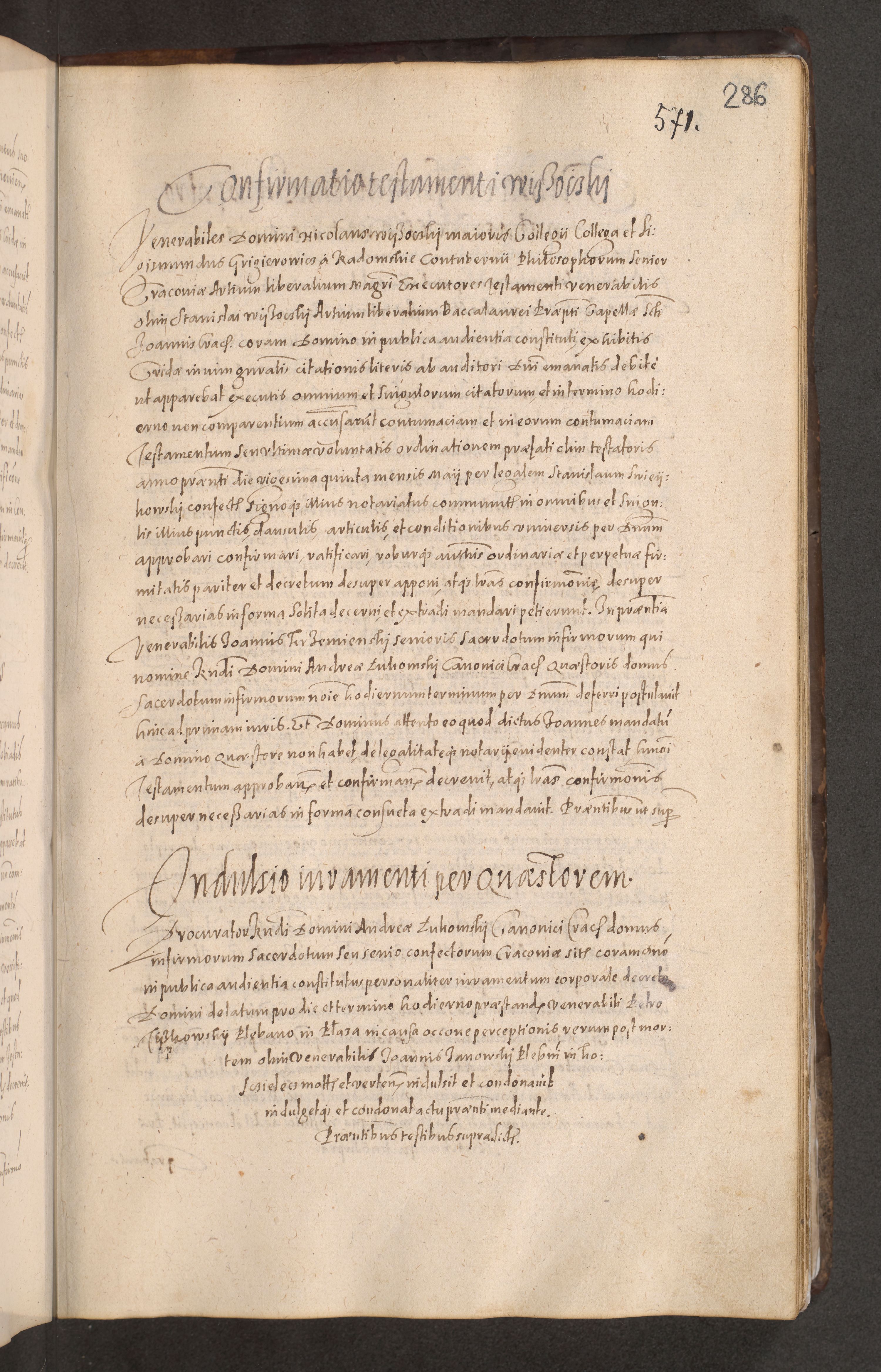 Acta actorum causarum obligationum institutionum decretorum constitutionum quietationum resignationum cissionum et atiaru obsernationum tam indiciariarum quam extra indiciariarum coram Admodum Reverendo Domino Joanne Zerzynski Canonico Vicario in Spiritualibus et Officiali generali Cracoviensis ad Annum Domini Millesimum Sextentissimum Vigesimum Indictione tertia Pontificatus SSmi D. N. D. Pauli Divina pronidentia Papae V. foeliciter moderni anno ipsins subfelici regimine Diocesis Cracoviensis Illustrissimi ac Reverendissimi D. N. D. Martini Szyszkowski Deigratia Episcopus Cracoviensis Ducis Severiensis in continuantur.