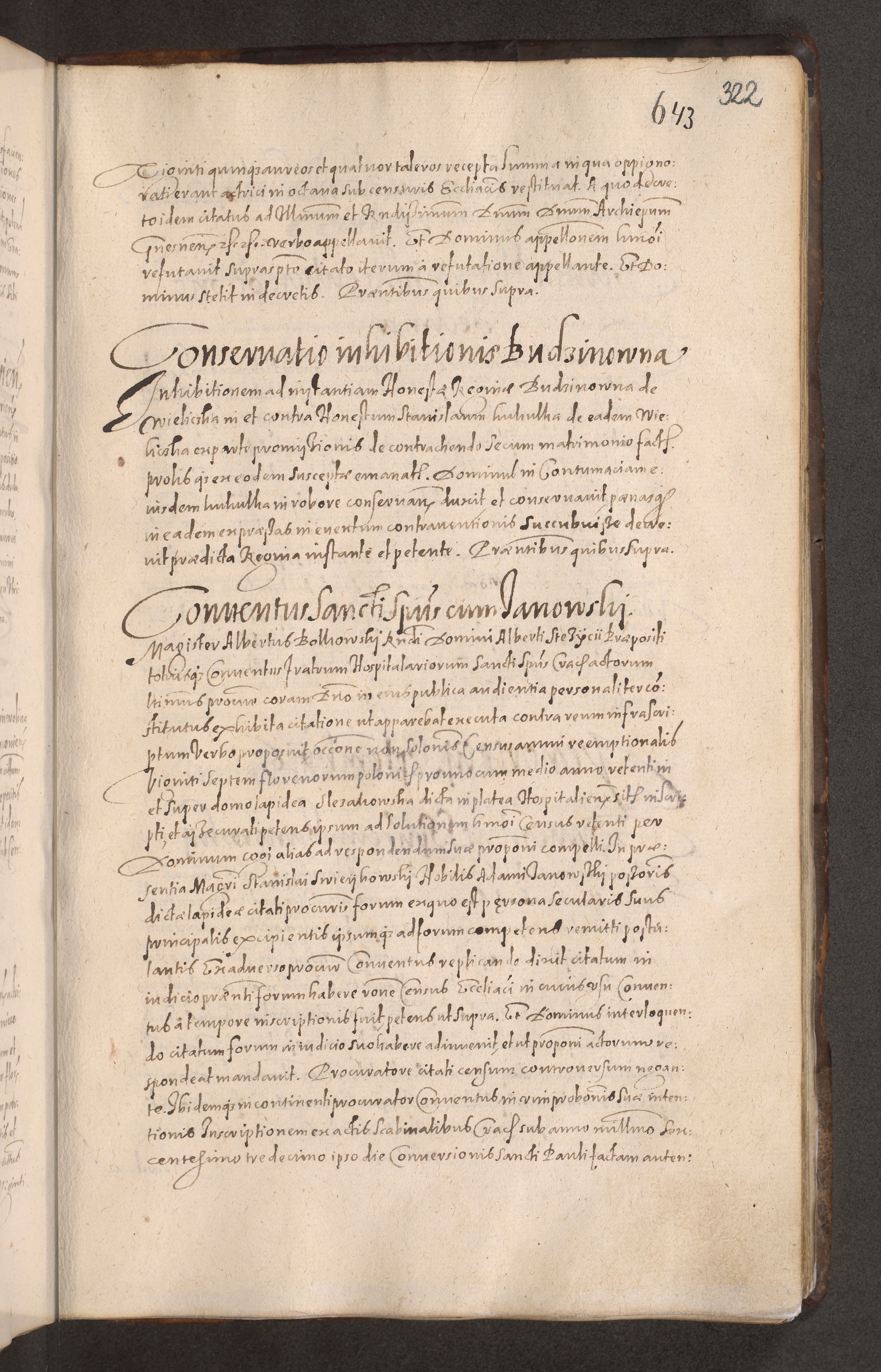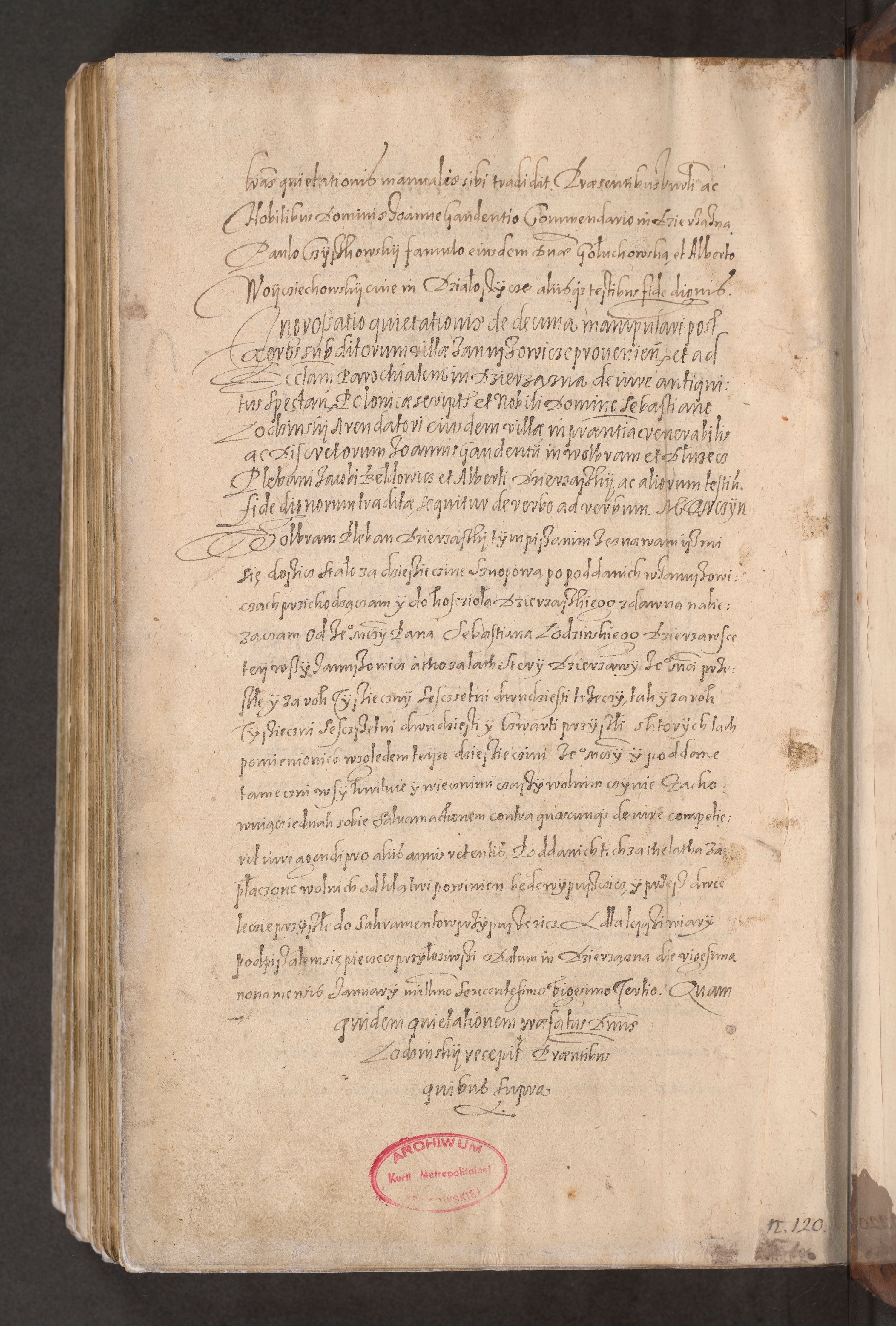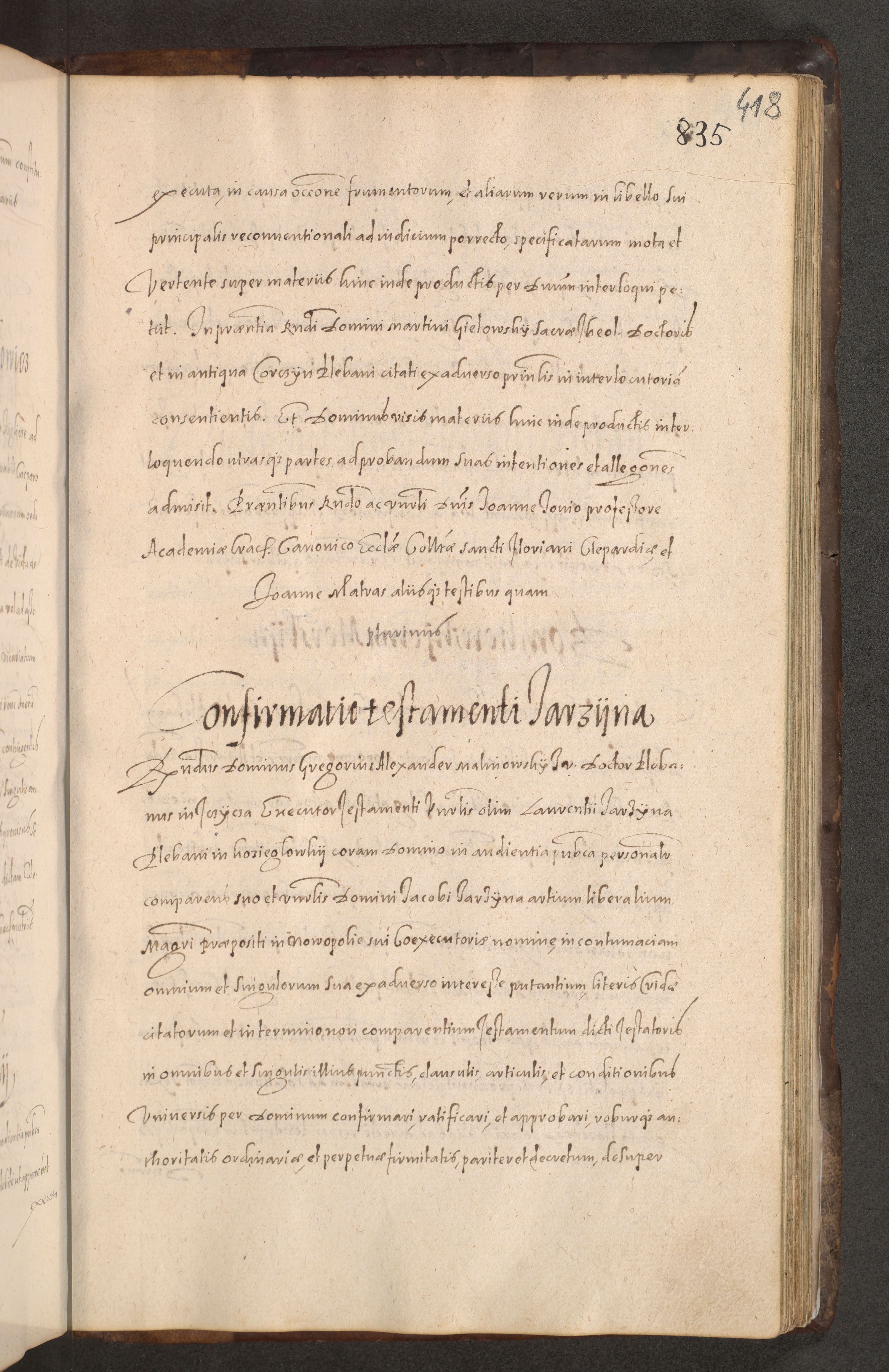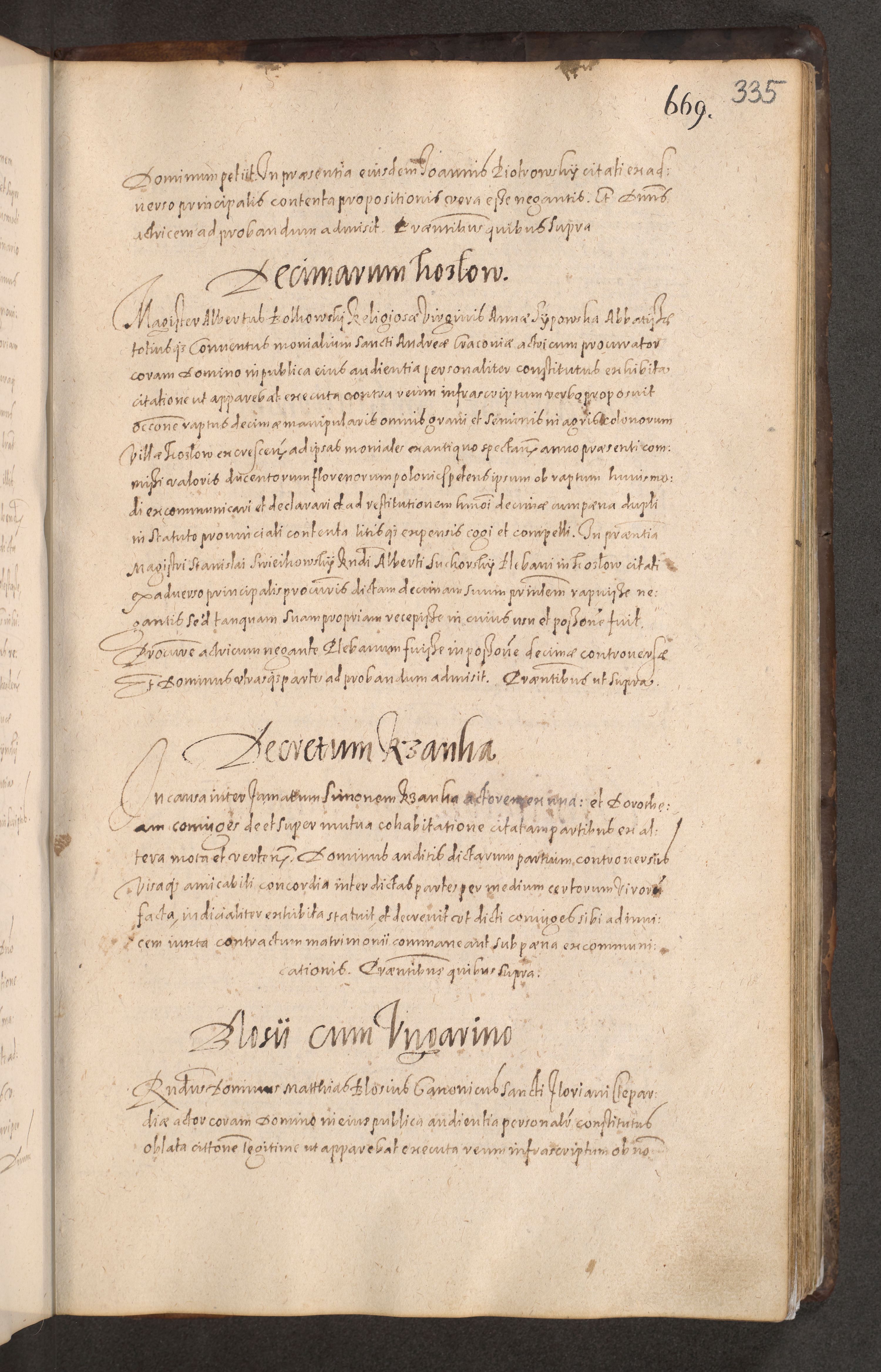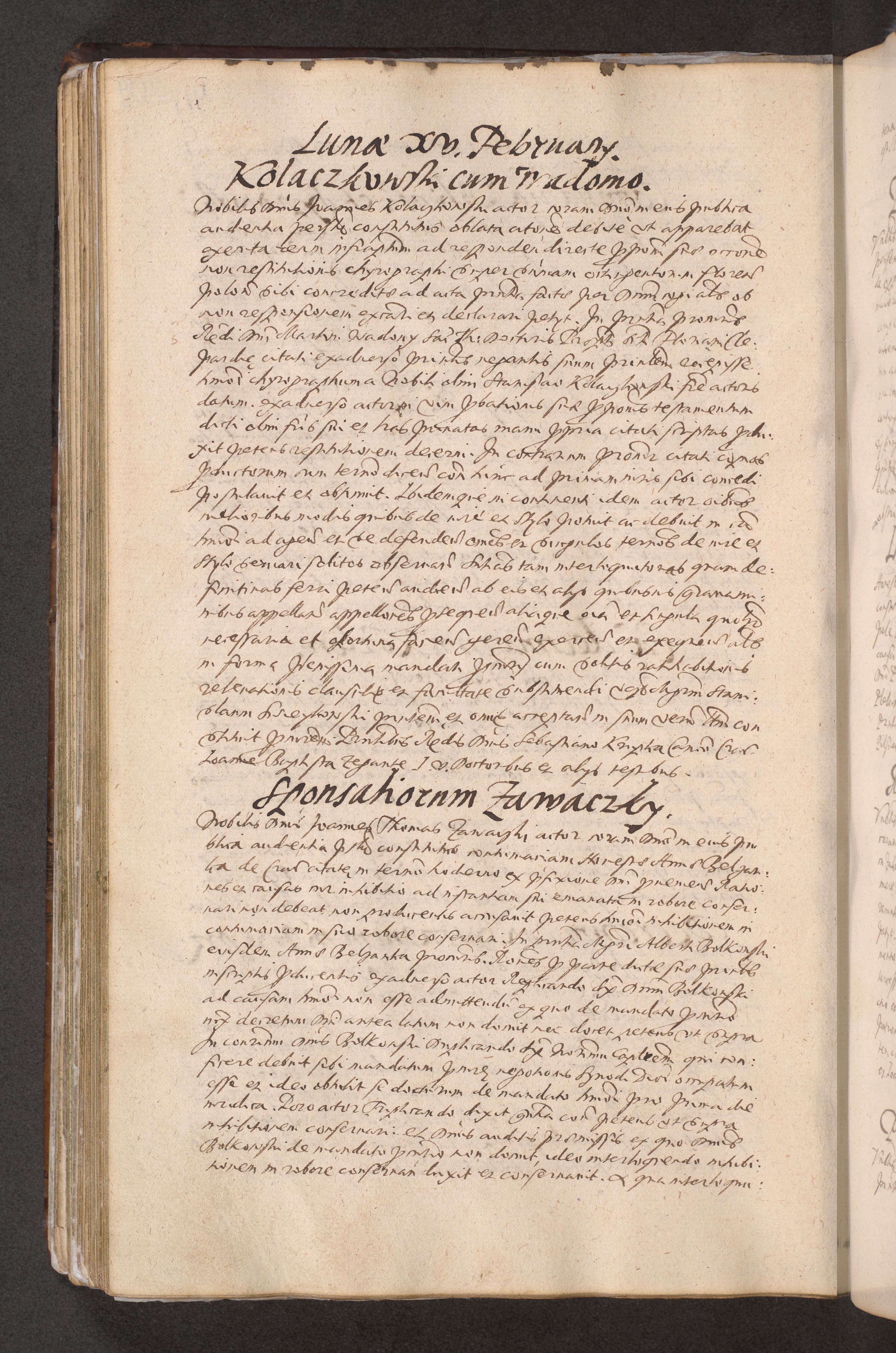 Acta actorum causarum obligationum institutionum decretorum constitutionum quietationum resignationum cissionum et atiaru obsernationum tam indiciariarum quam extra indiciariarum coram Admodum Reverendo Domino Joanne Zerzynski Canonico Vicario in Spiritualibus et Officiali generali Cracoviensis ad Annum Domini Millesimum Sextentissimum Vigesimum Indictione tertia Pontificatus SSmi D. N. D. Pauli Divina pronidentia Papae V. foeliciter moderni anno ipsins subfelici regimine Diocesis Cracoviensis Illustrissimi ac Reverendissimi D. N. D. Martini Szyszkowski Deigratia Episcopus Cracoviensis Ducis Severiensis in continuantur.