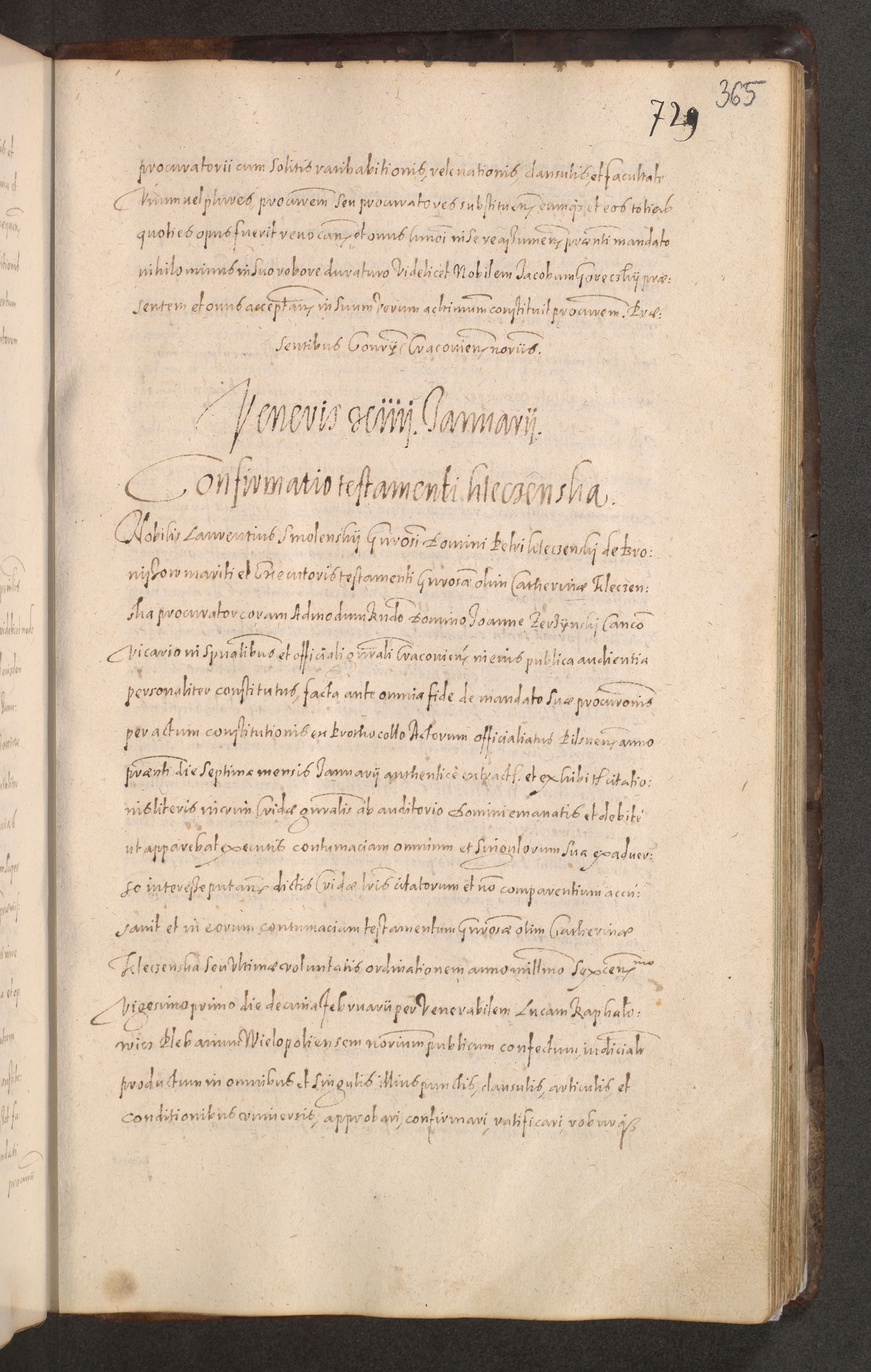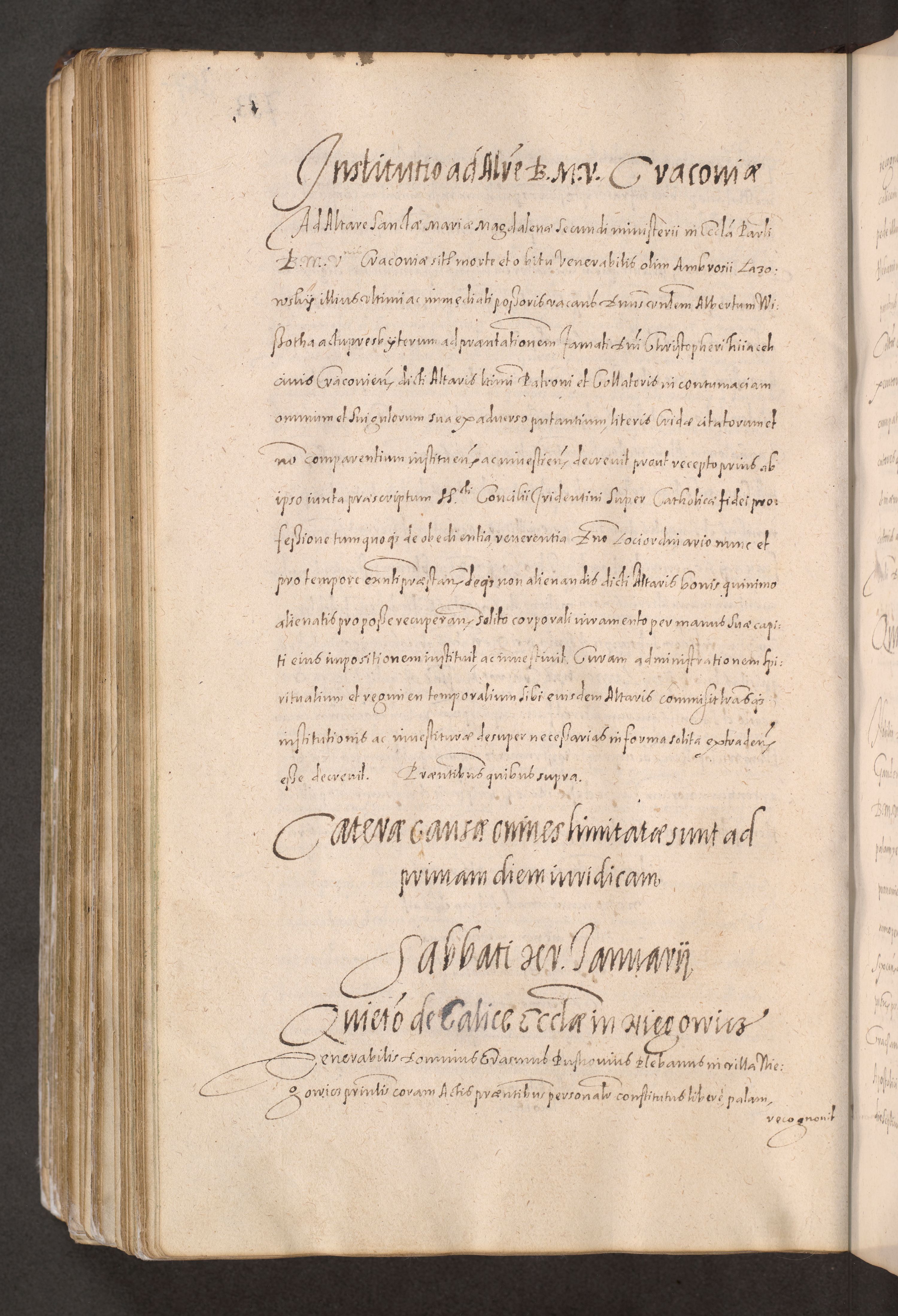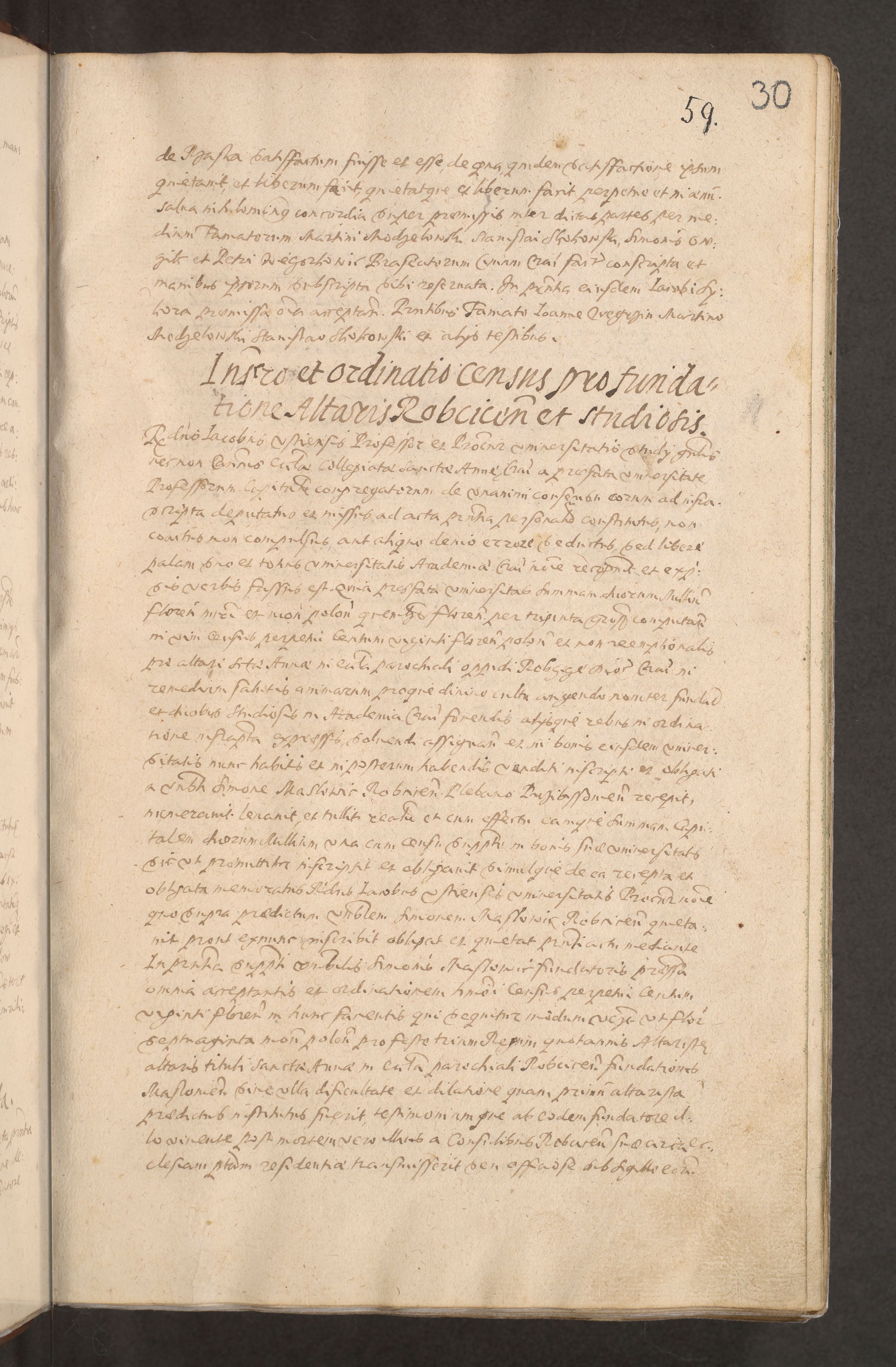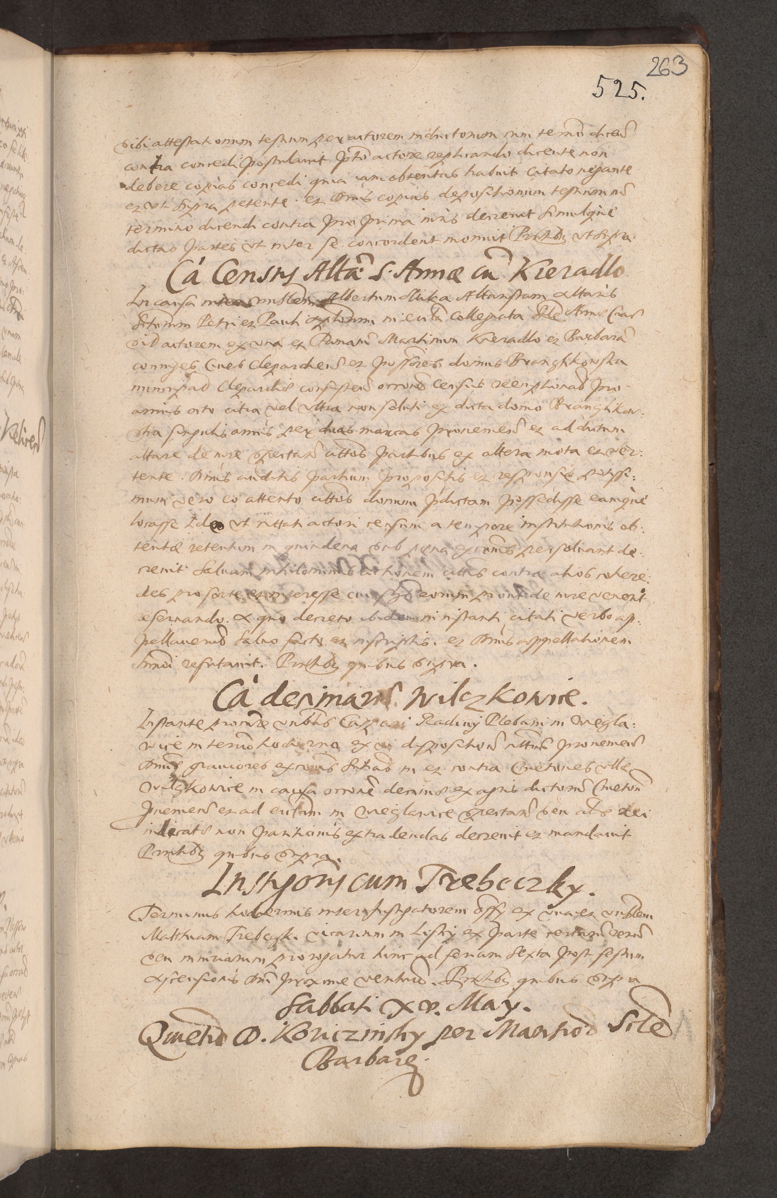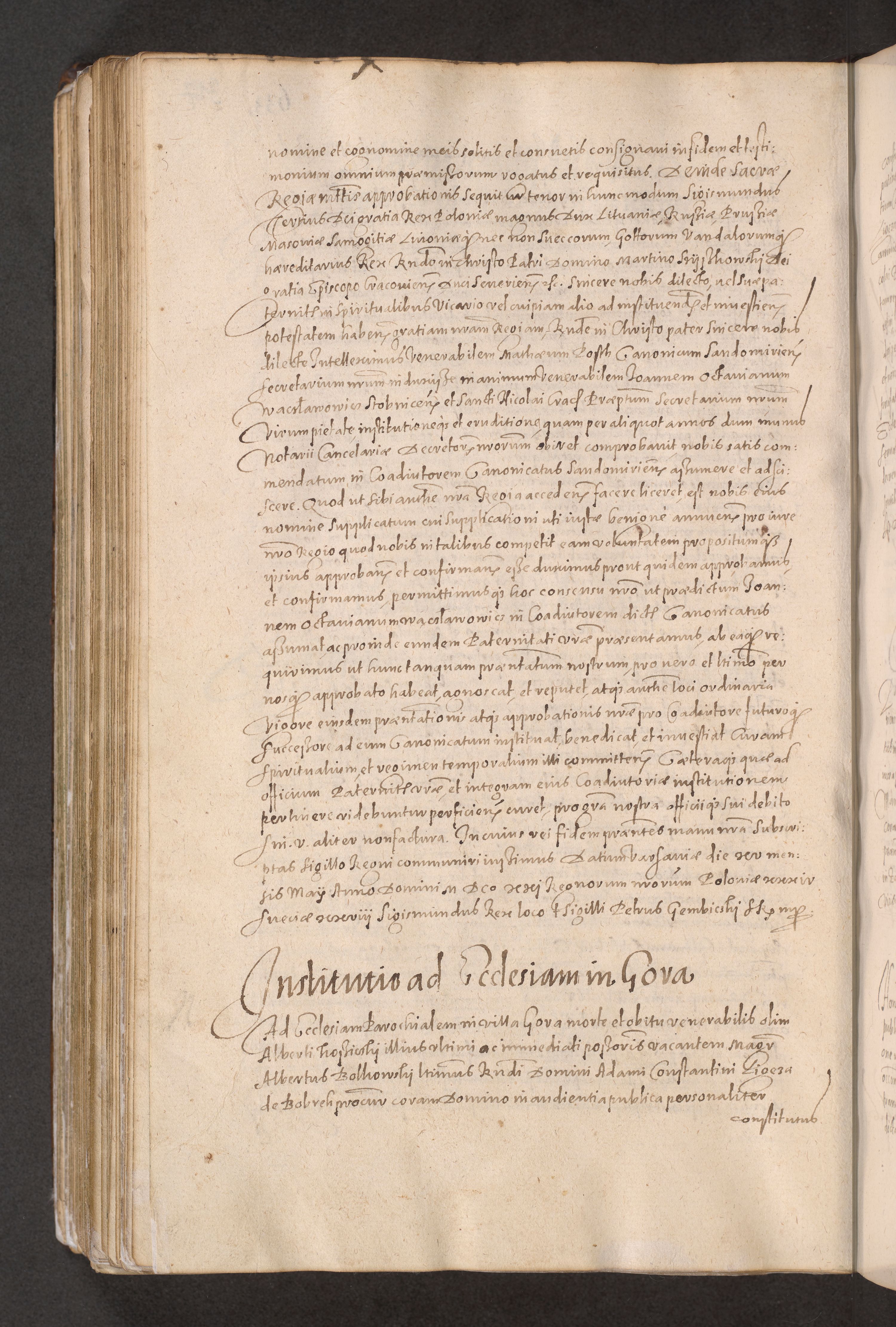 Acta actorum causarum obligationum institutionum decretorum constitutionum quietationum resignationum cissionum et atiaru obsernationum tam indiciariarum quam extra indiciariarum coram Admodum Reverendo Domino Joanne Zerzynski Canonico Vicario in Spiritualibus et Officiali generali Cracoviensis ad Annum Domini Millesimum Sextentissimum Vigesimum Indictione tertia Pontificatus SSmi D. N. D. Pauli Divina pronidentia Papae V. foeliciter moderni anno ipsins subfelici regimine Diocesis Cracoviensis Illustrissimi ac Reverendissimi D. N. D. Martini Szyszkowski Deigratia Episcopus Cracoviensis Ducis Severiensis in continuantur.