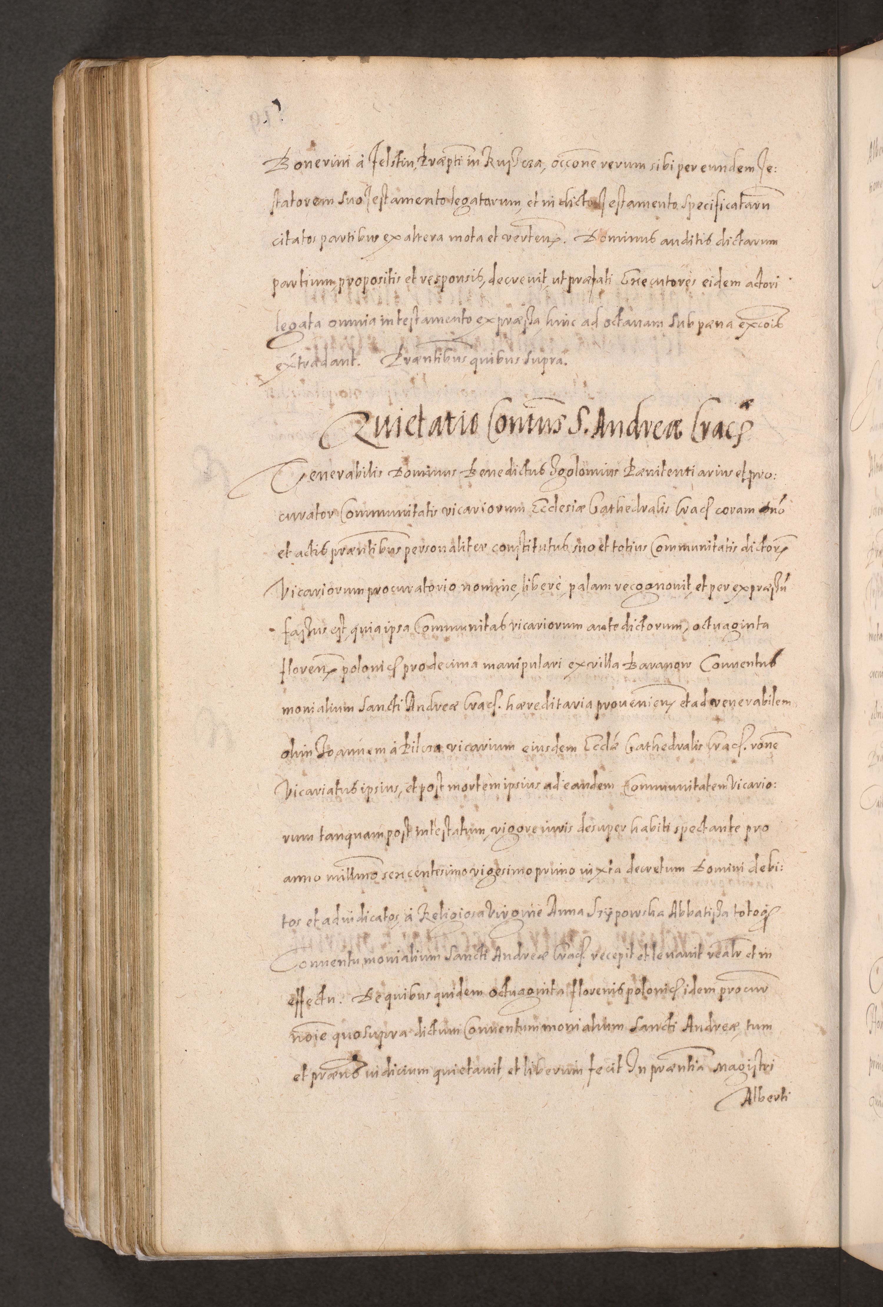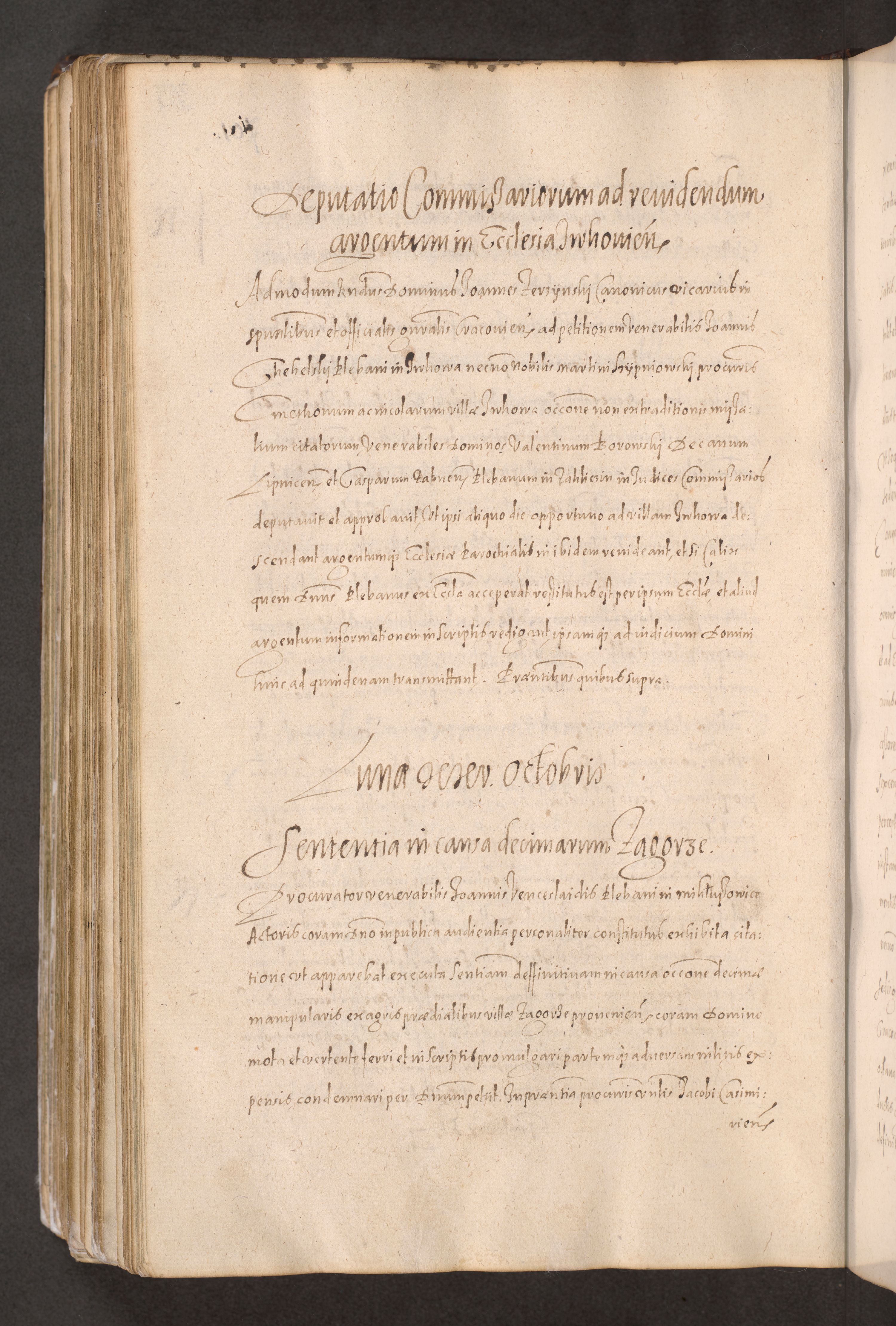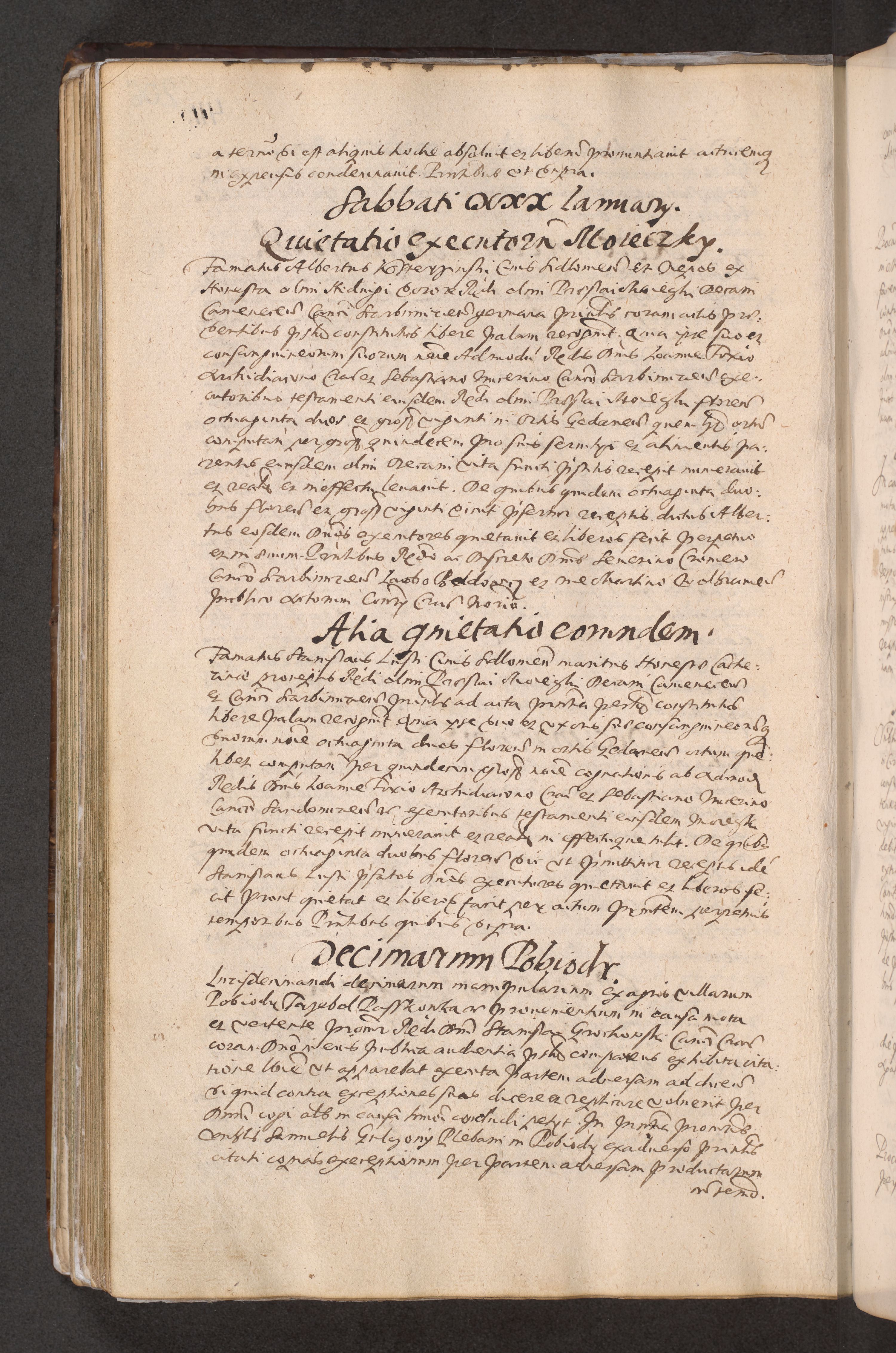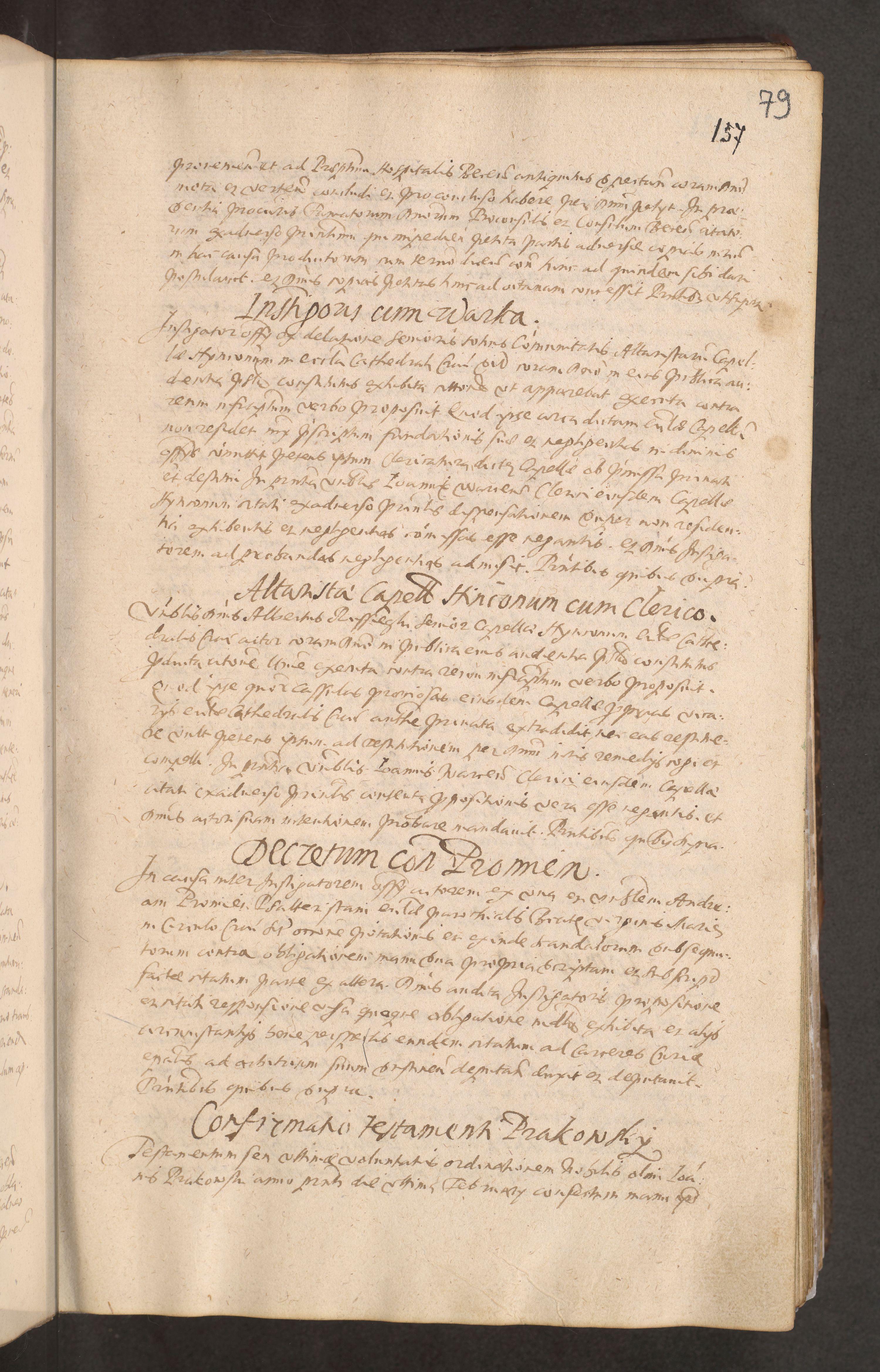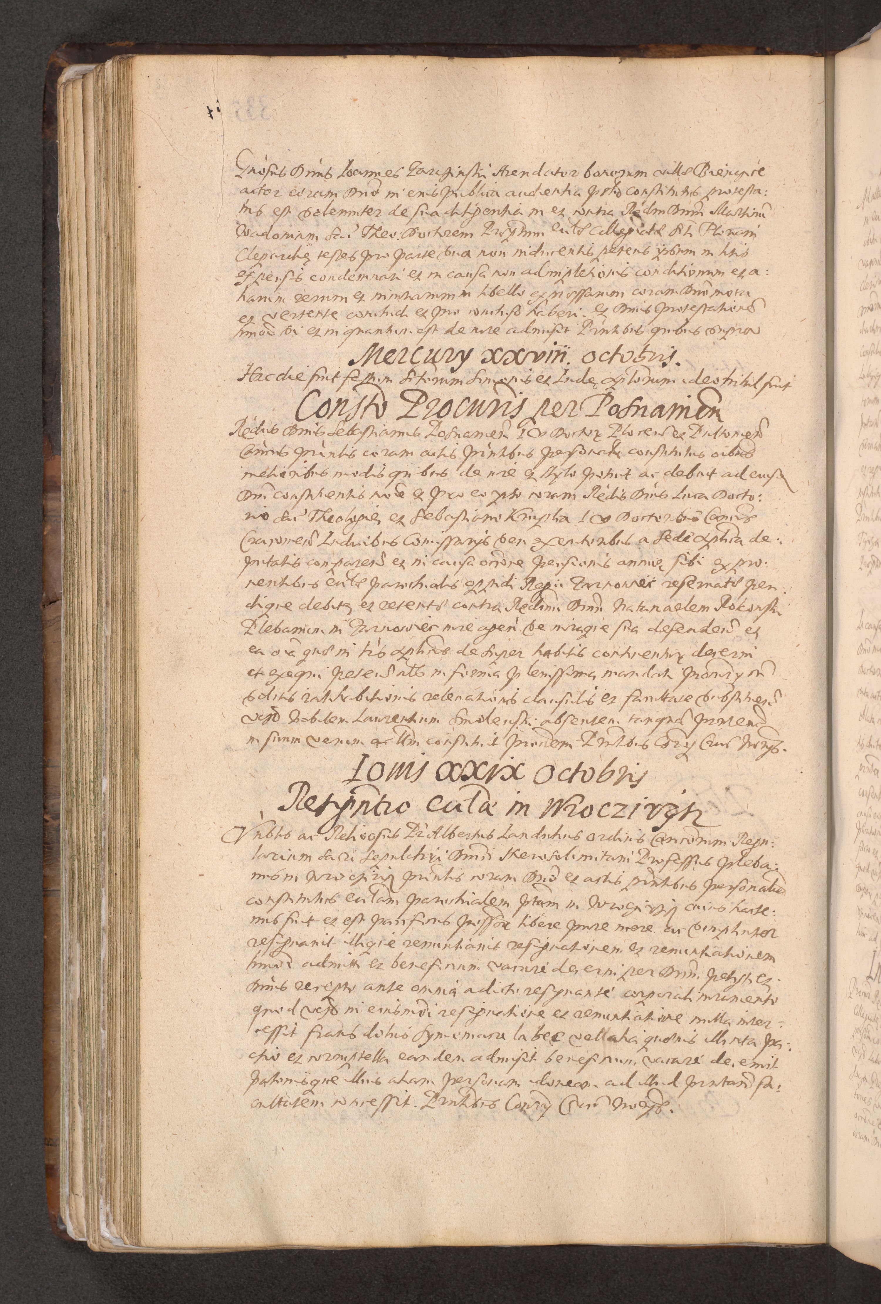 Acta actorum causarum obligationum institutionum decretorum constitutionum quietationum resignationum cissionum et atiaru obsernationum tam indiciariarum quam extra indiciariarum coram Admodum Reverendo Domino Joanne Zerzynski Canonico Vicario in Spiritualibus et Officiali generali Cracoviensis ad Annum Domini Millesimum Sextentissimum Vigesimum Indictione tertia Pontificatus SSmi D. N. D. Pauli Divina pronidentia Papae V. foeliciter moderni anno ipsins subfelici regimine Diocesis Cracoviensis Illustrissimi ac Reverendissimi D. N. D. Martini Szyszkowski Deigratia Episcopus Cracoviensis Ducis Severiensis in continuantur.