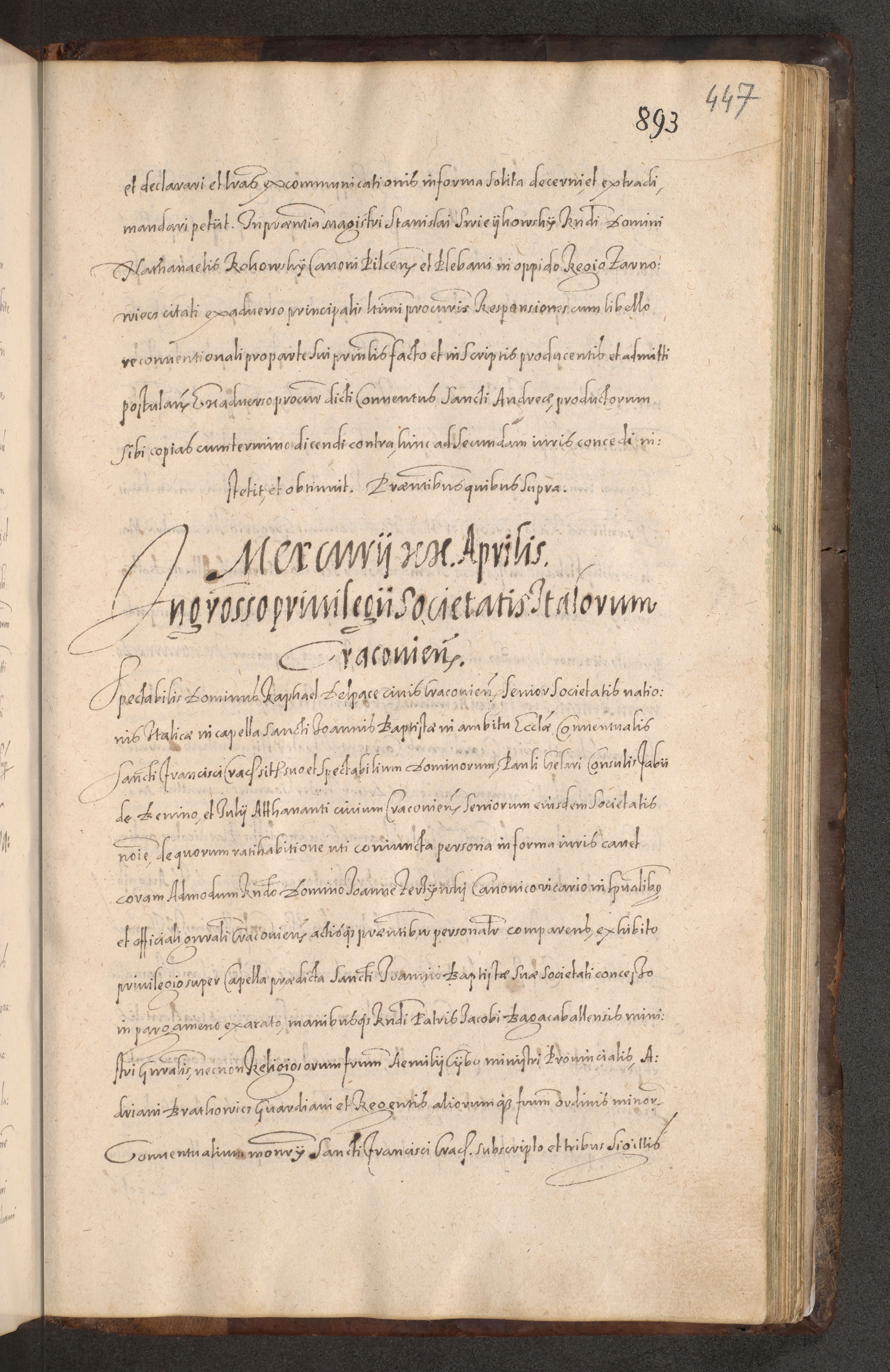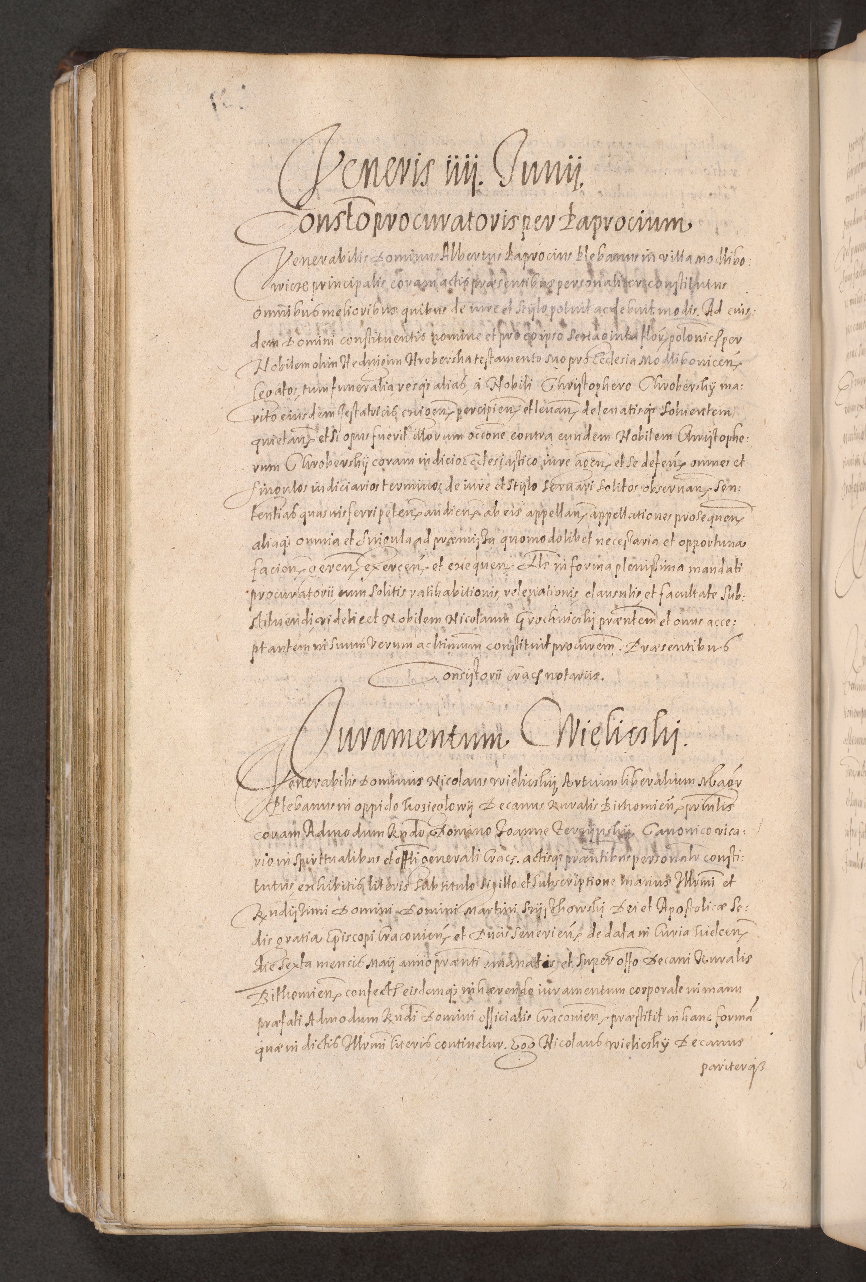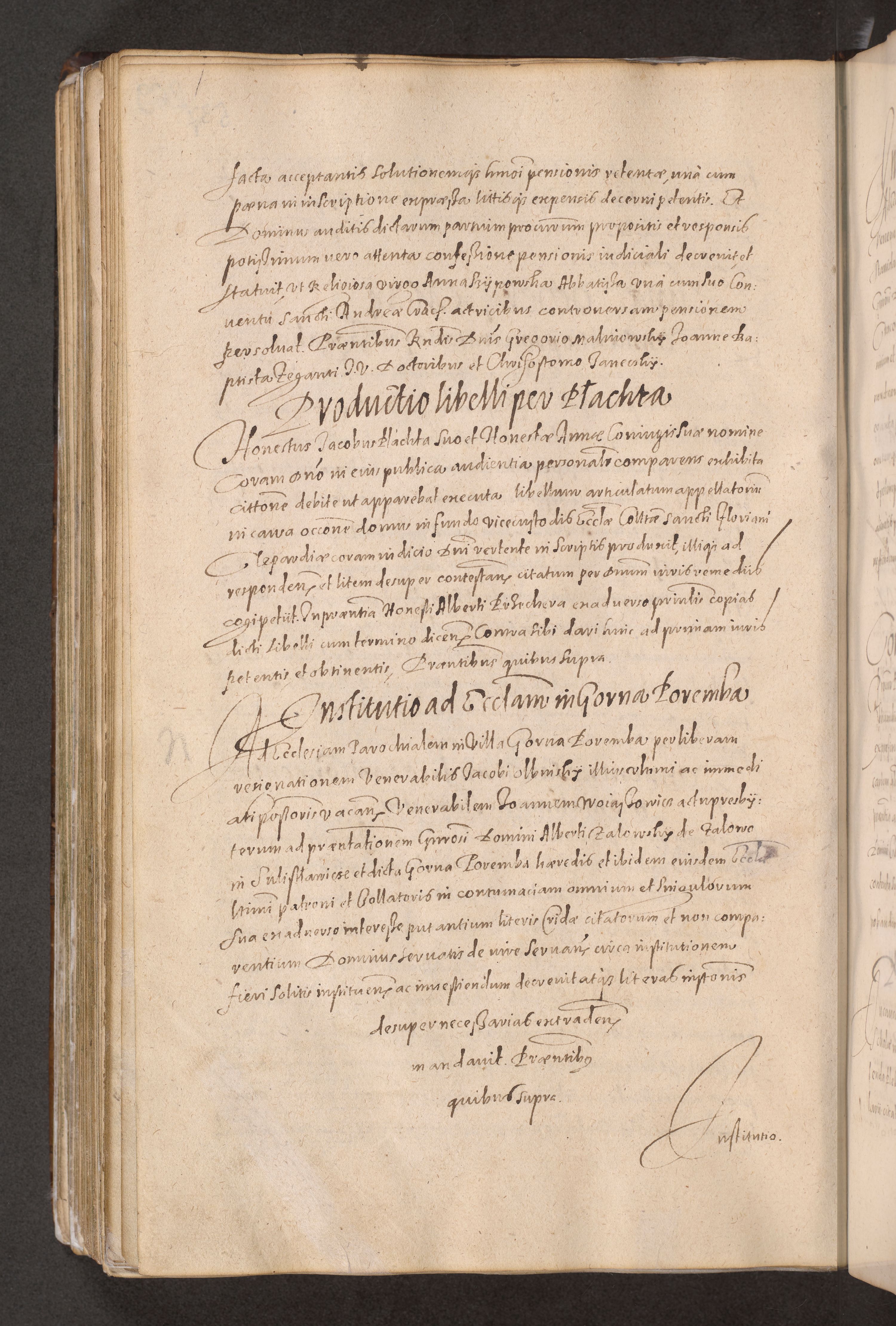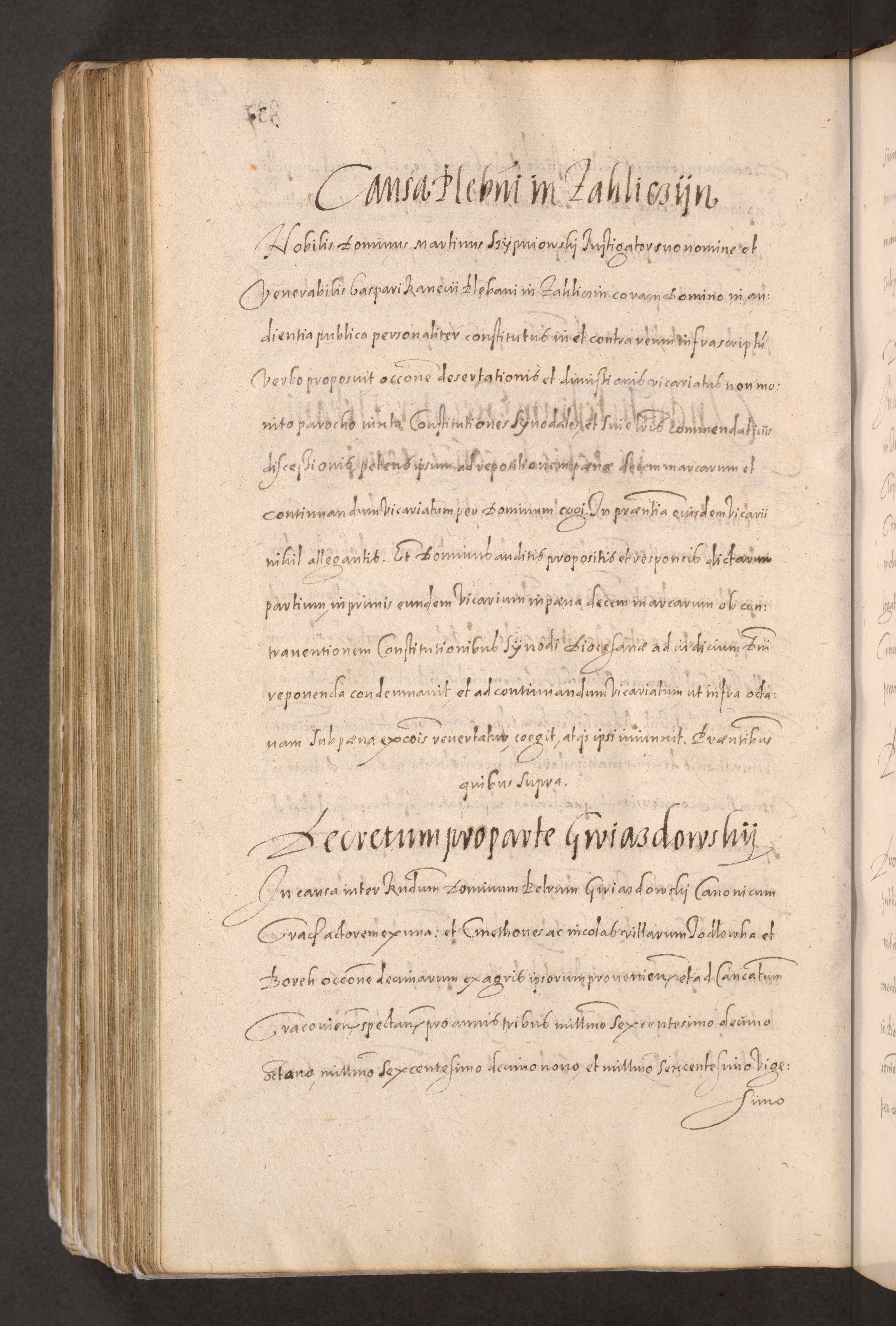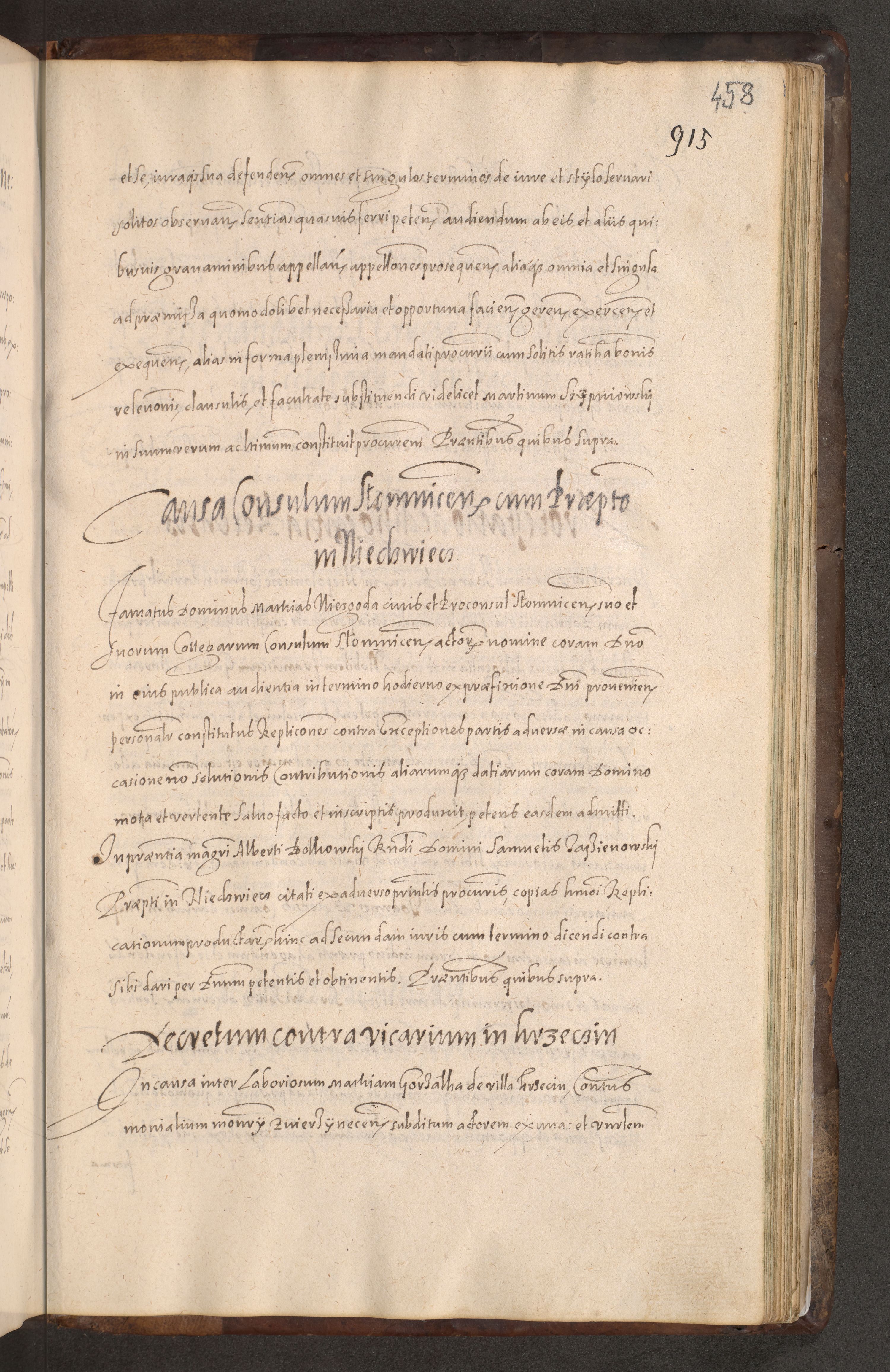 Acta actorum causarum obligationum institutionum decretorum constitutionum quietationum resignationum cissionum et atiaru obsernationum tam indiciariarum quam extra indiciariarum coram Admodum Reverendo Domino Joanne Zerzynski Canonico Vicario in Spiritualibus et Officiali generali Cracoviensis ad Annum Domini Millesimum Sextentissimum Vigesimum Indictione tertia Pontificatus SSmi D. N. D. Pauli Divina pronidentia Papae V. foeliciter moderni anno ipsins subfelici regimine Diocesis Cracoviensis Illustrissimi ac Reverendissimi D. N. D. Martini Szyszkowski Deigratia Episcopus Cracoviensis Ducis Severiensis in continuantur.