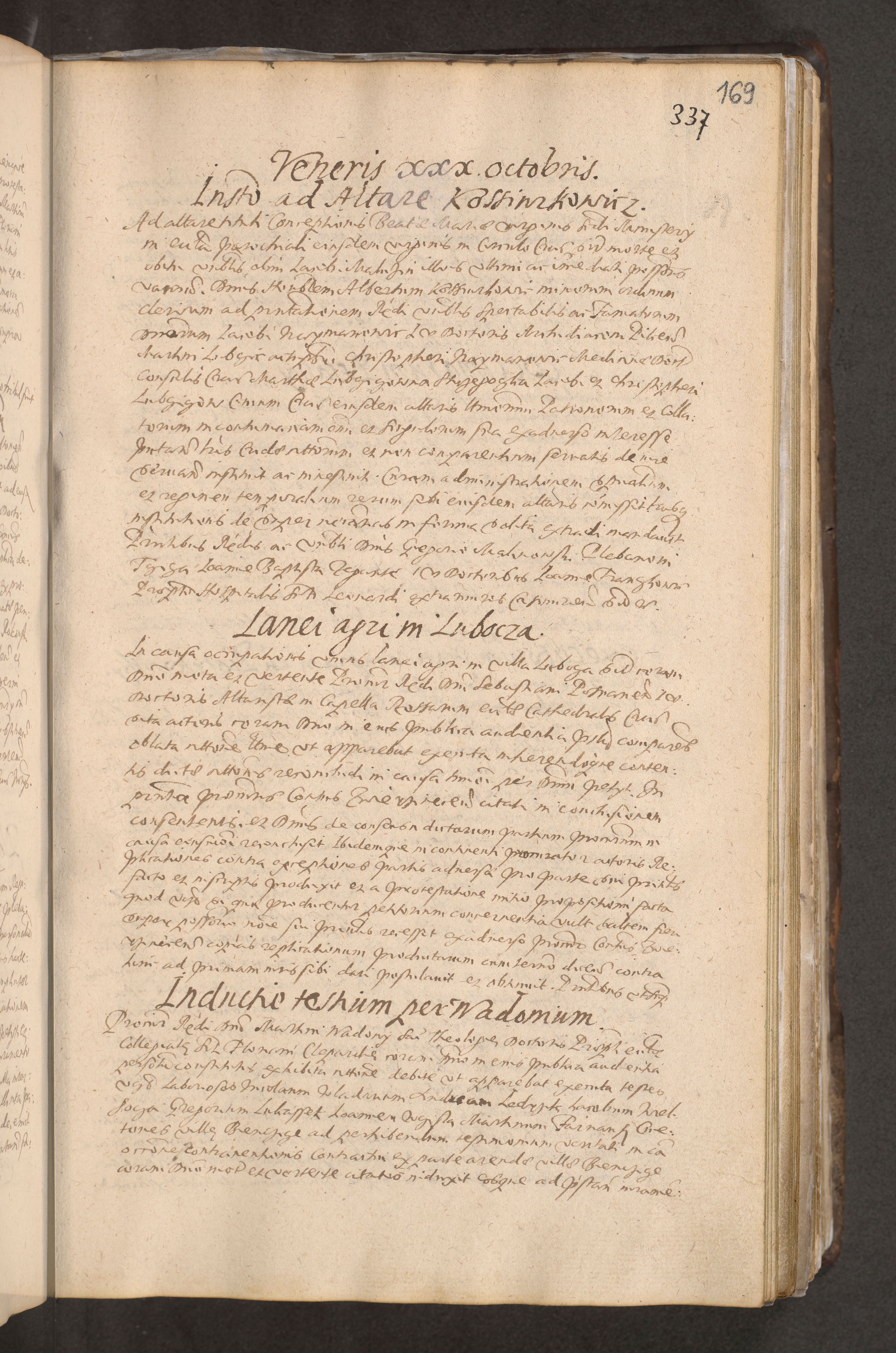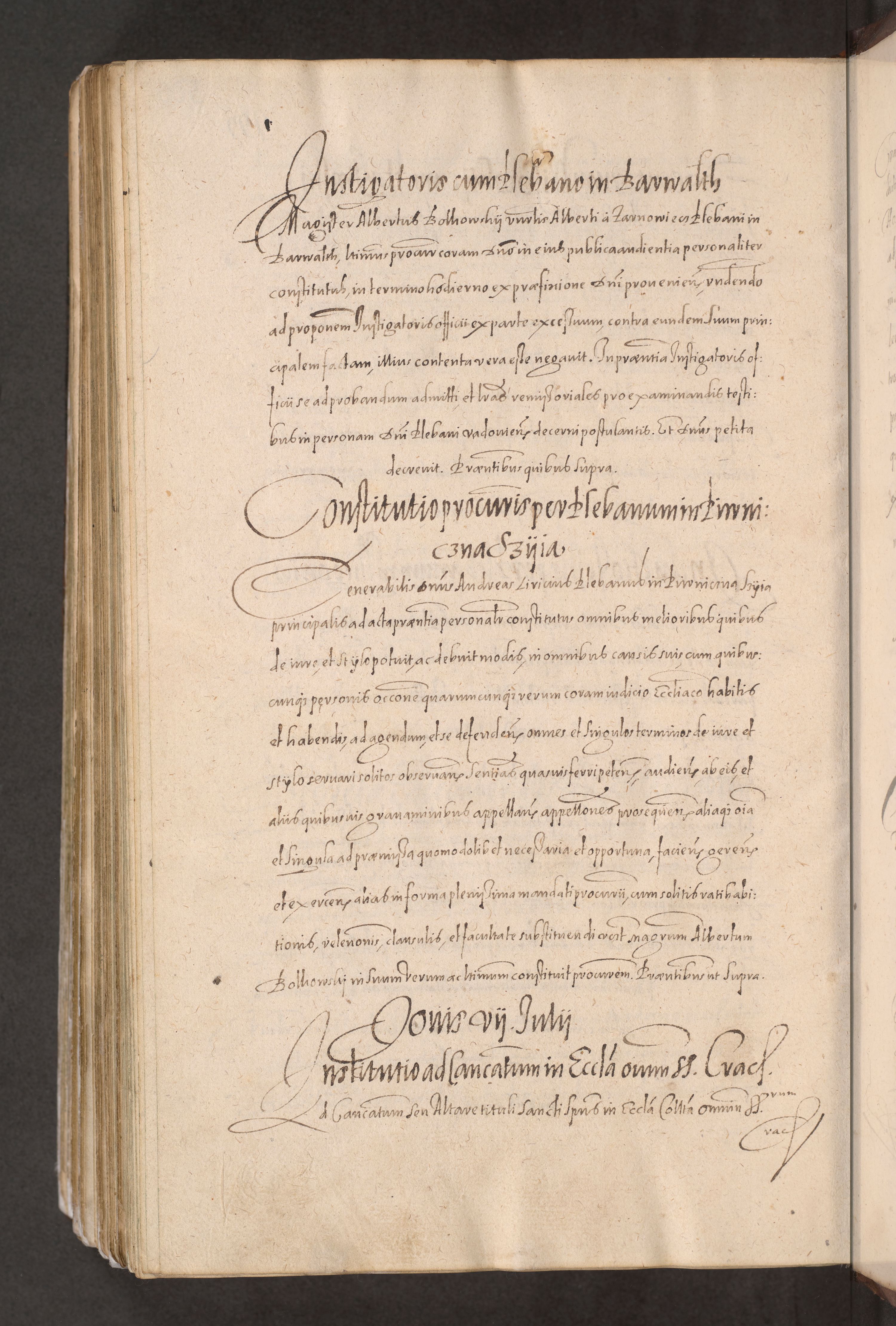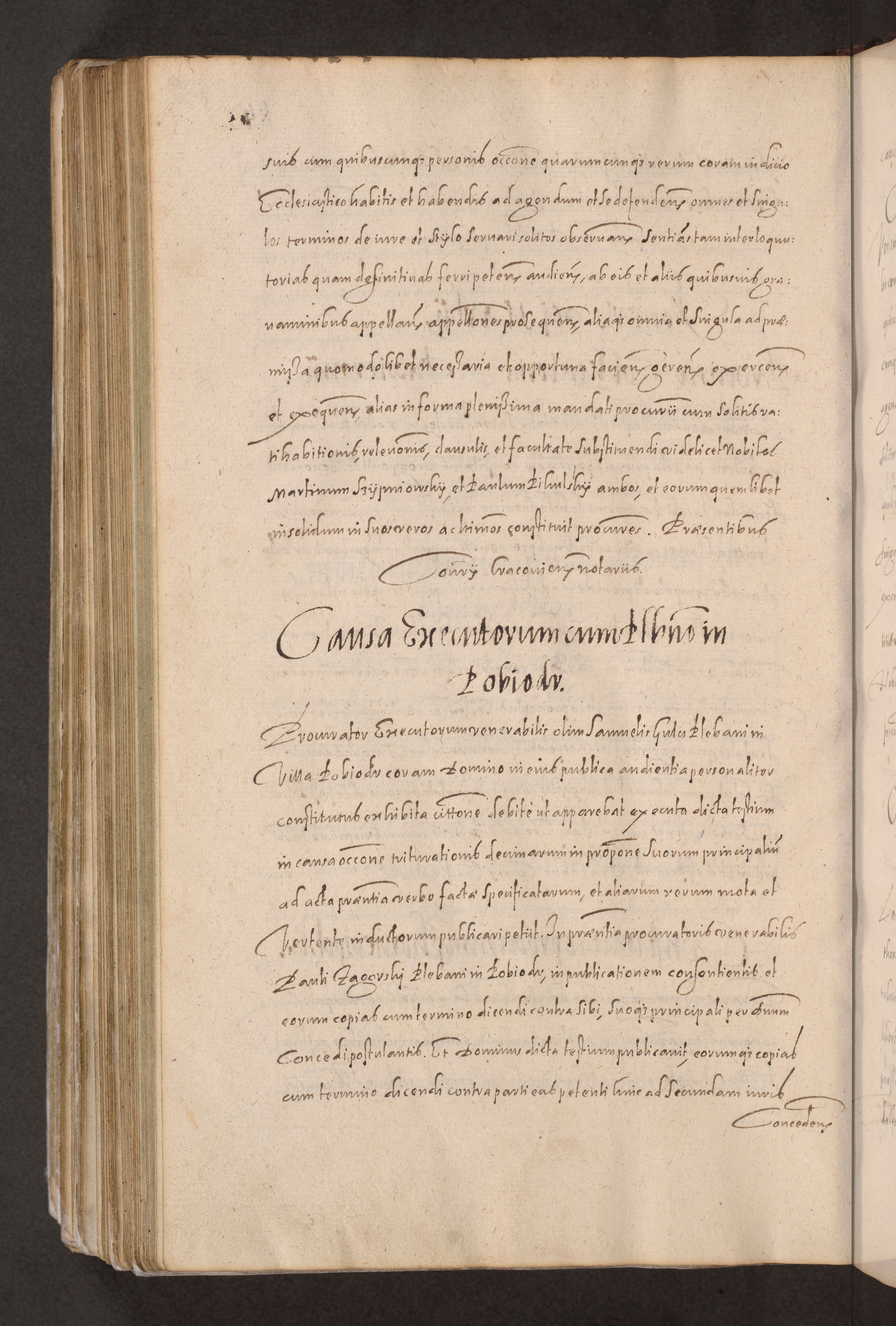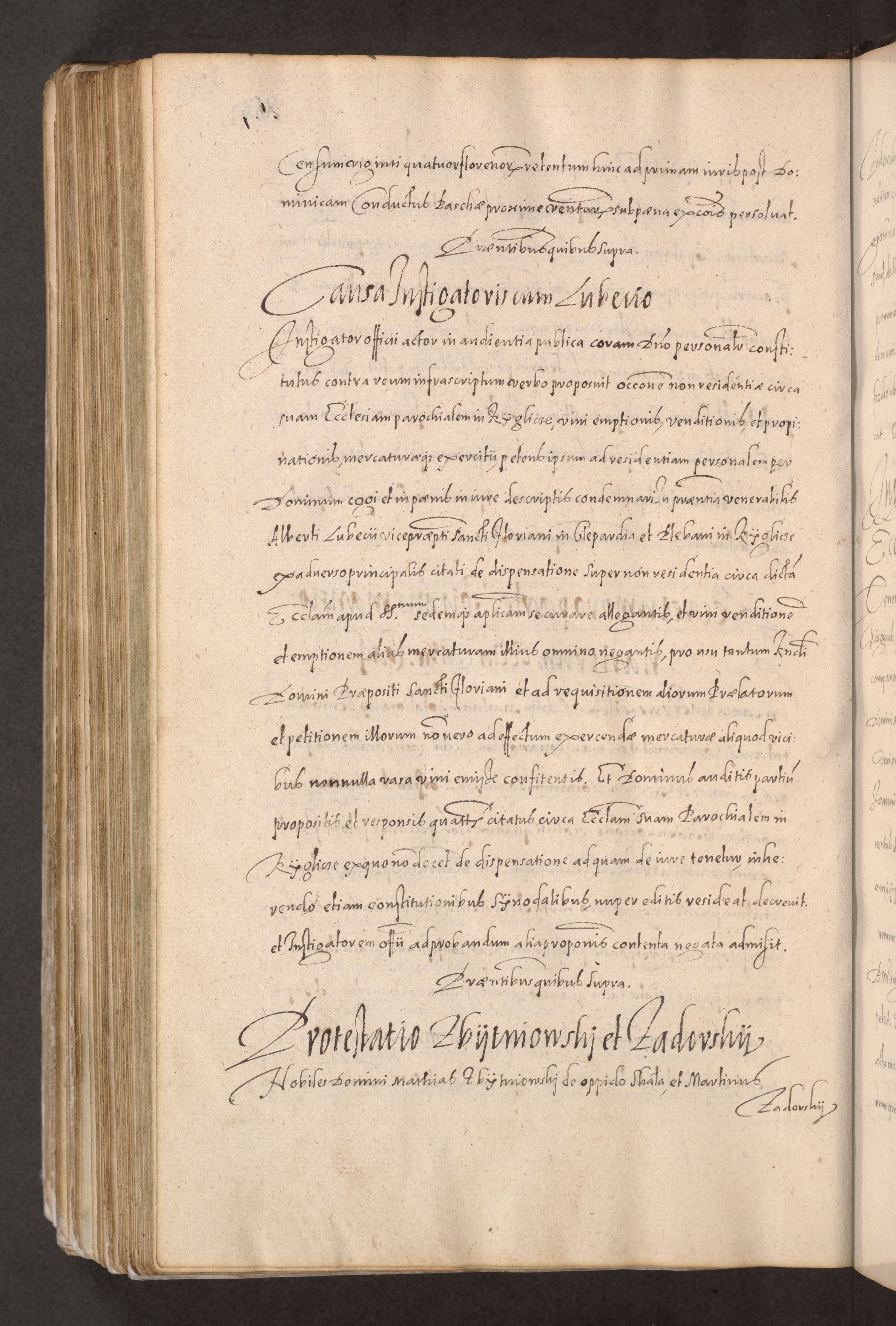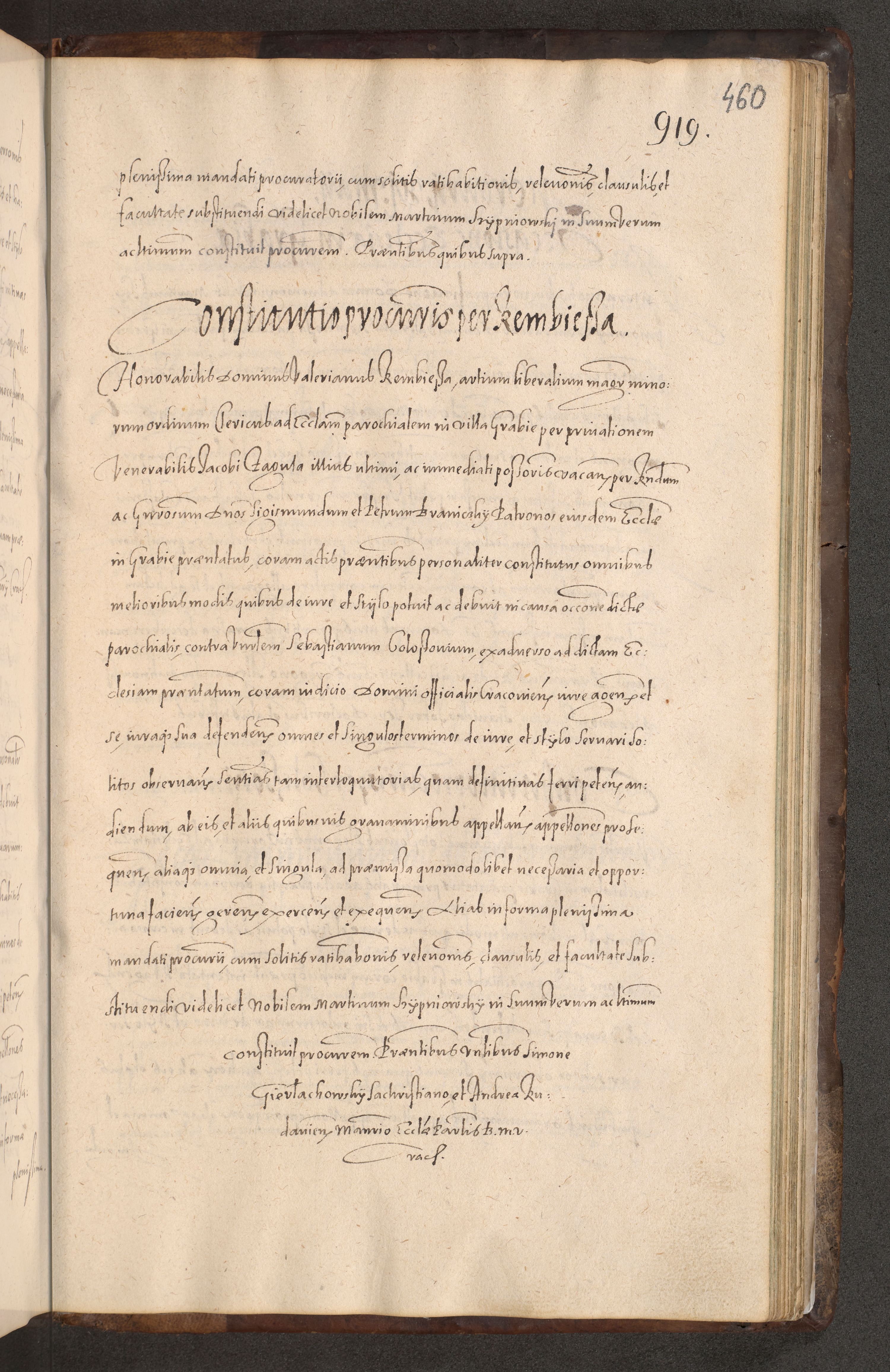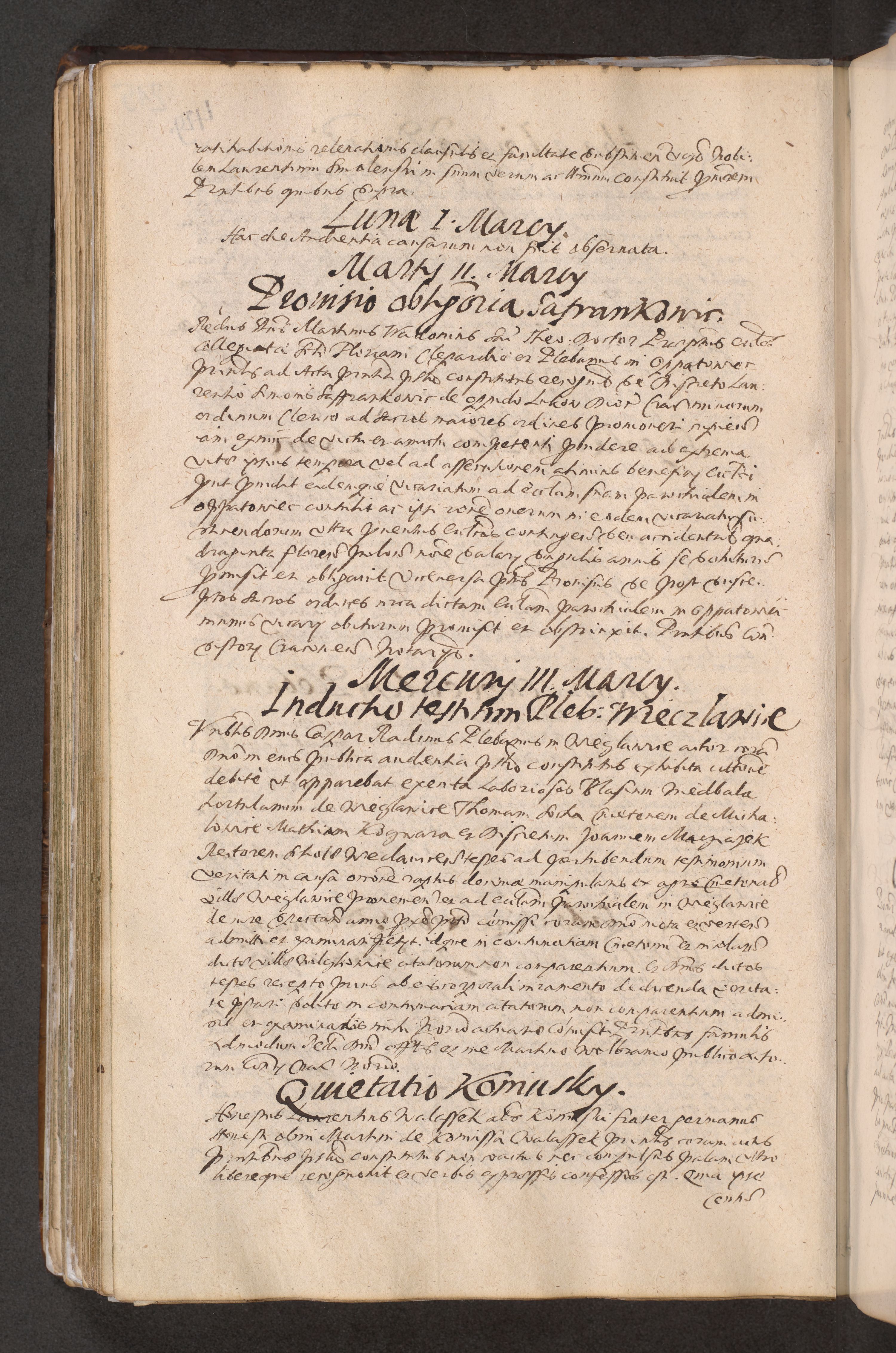 Acta actorum causarum obligationum institutionum decretorum constitutionum quietationum resignationum cissionum et atiaru obsernationum tam indiciariarum quam extra indiciariarum coram Admodum Reverendo Domino Joanne Zerzynski Canonico Vicario in Spiritualibus et Officiali generali Cracoviensis ad Annum Domini Millesimum Sextentissimum Vigesimum Indictione tertia Pontificatus SSmi D. N. D. Pauli Divina pronidentia Papae V. foeliciter moderni anno ipsins subfelici regimine Diocesis Cracoviensis Illustrissimi ac Reverendissimi D. N. D. Martini Szyszkowski Deigratia Episcopus Cracoviensis Ducis Severiensis in continuantur.