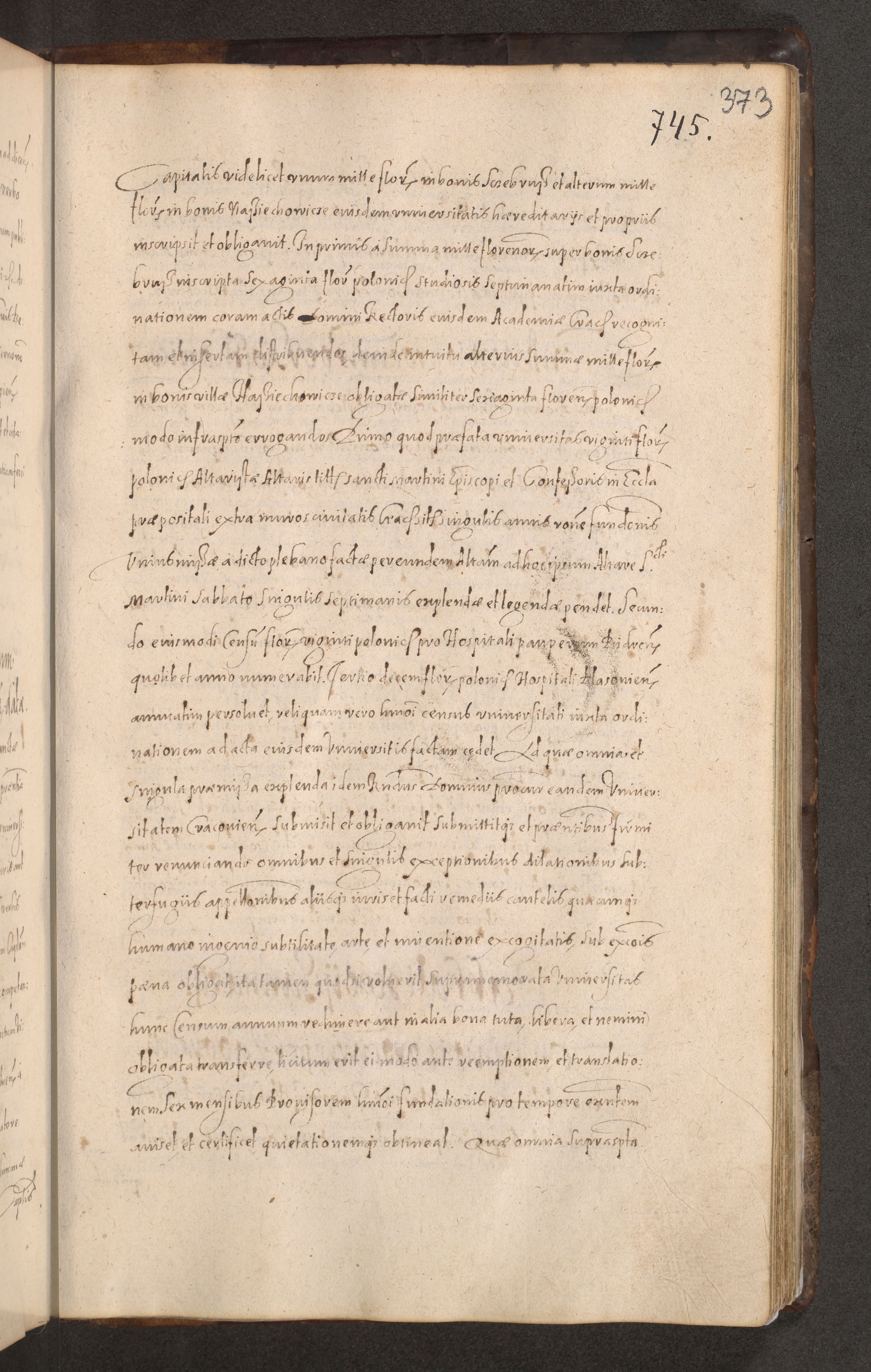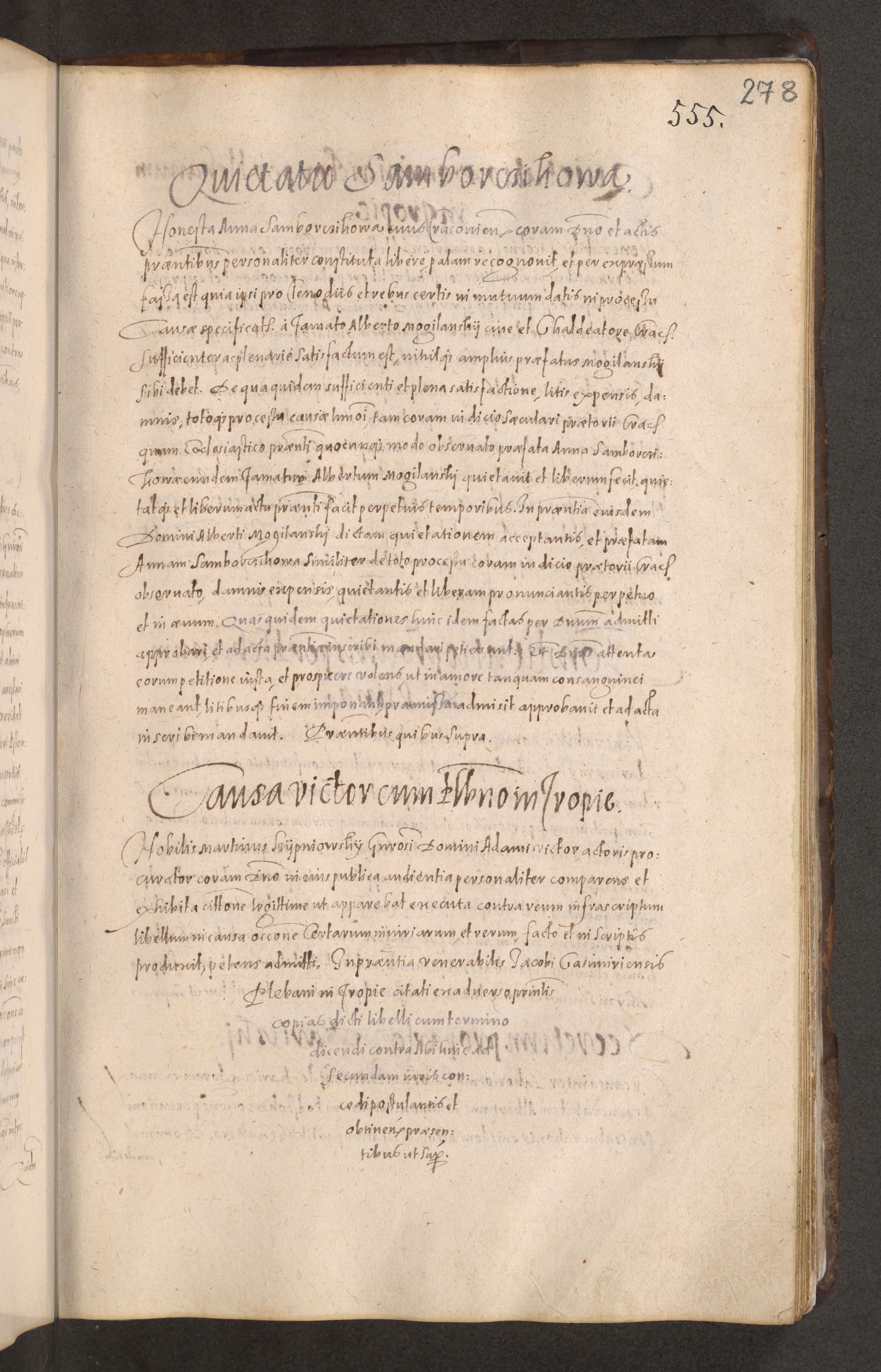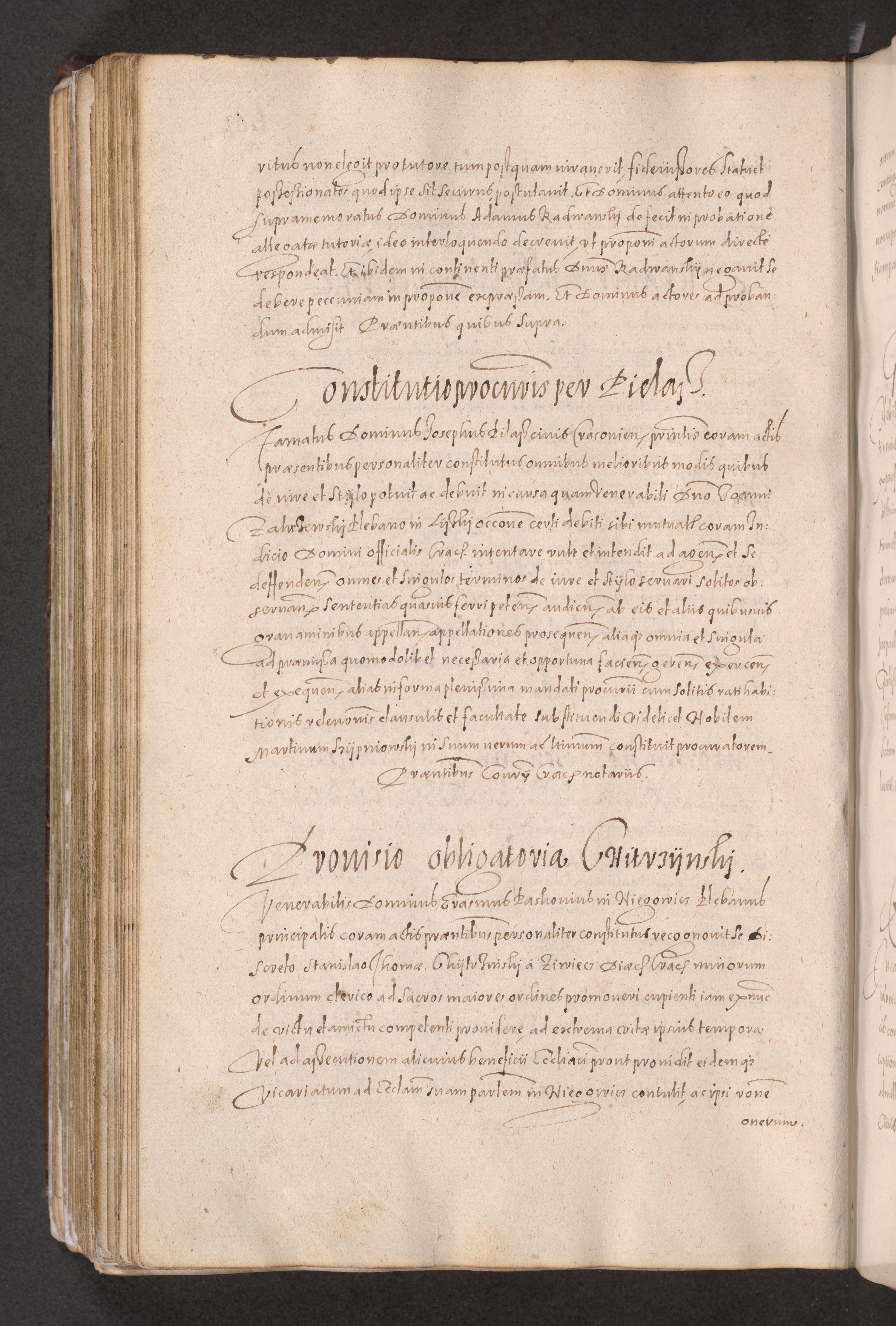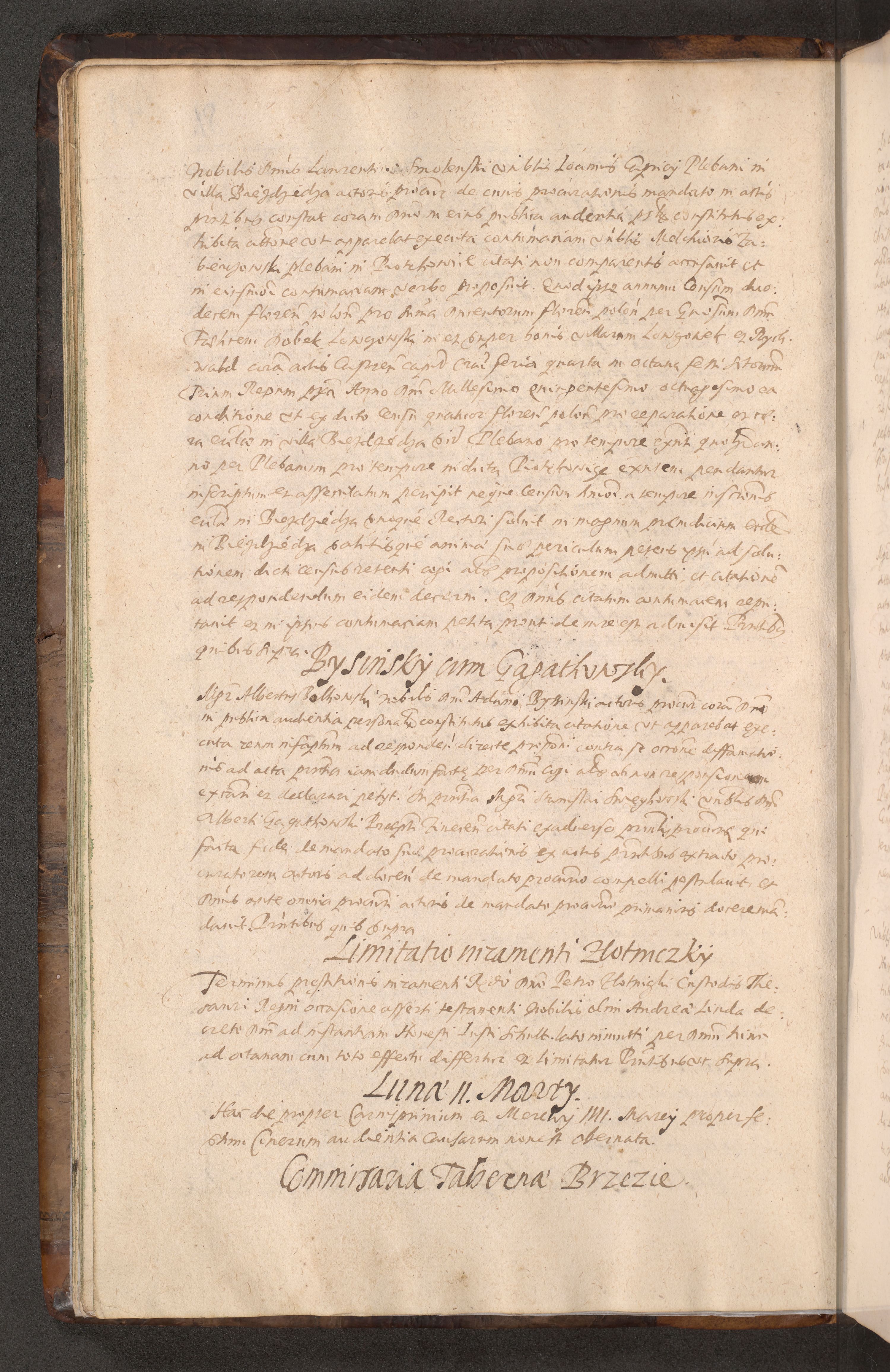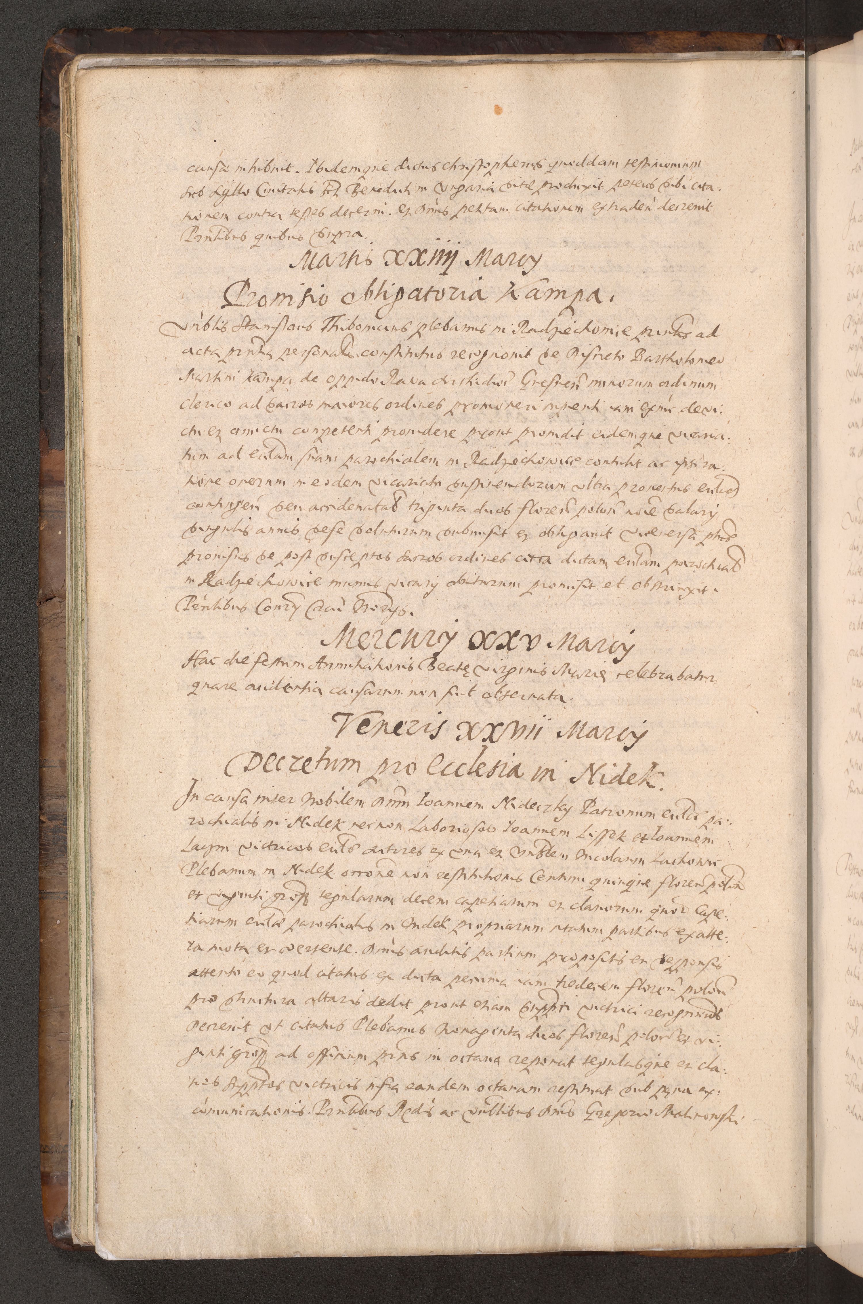 Acta actorum causarum obligationum institutionum decretorum constitutionum quietationum resignationum cissionum et atiaru obsernationum tam indiciariarum quam extra indiciariarum coram Admodum Reverendo Domino Joanne Zerzynski Canonico Vicario in Spiritualibus et Officiali generali Cracoviensis ad Annum Domini Millesimum Sextentissimum Vigesimum Indictione tertia Pontificatus SSmi D. N. D. Pauli Divina pronidentia Papae V. foeliciter moderni anno ipsins subfelici regimine Diocesis Cracoviensis Illustrissimi ac Reverendissimi D. N. D. Martini Szyszkowski Deigratia Episcopus Cracoviensis Ducis Severiensis in continuantur.