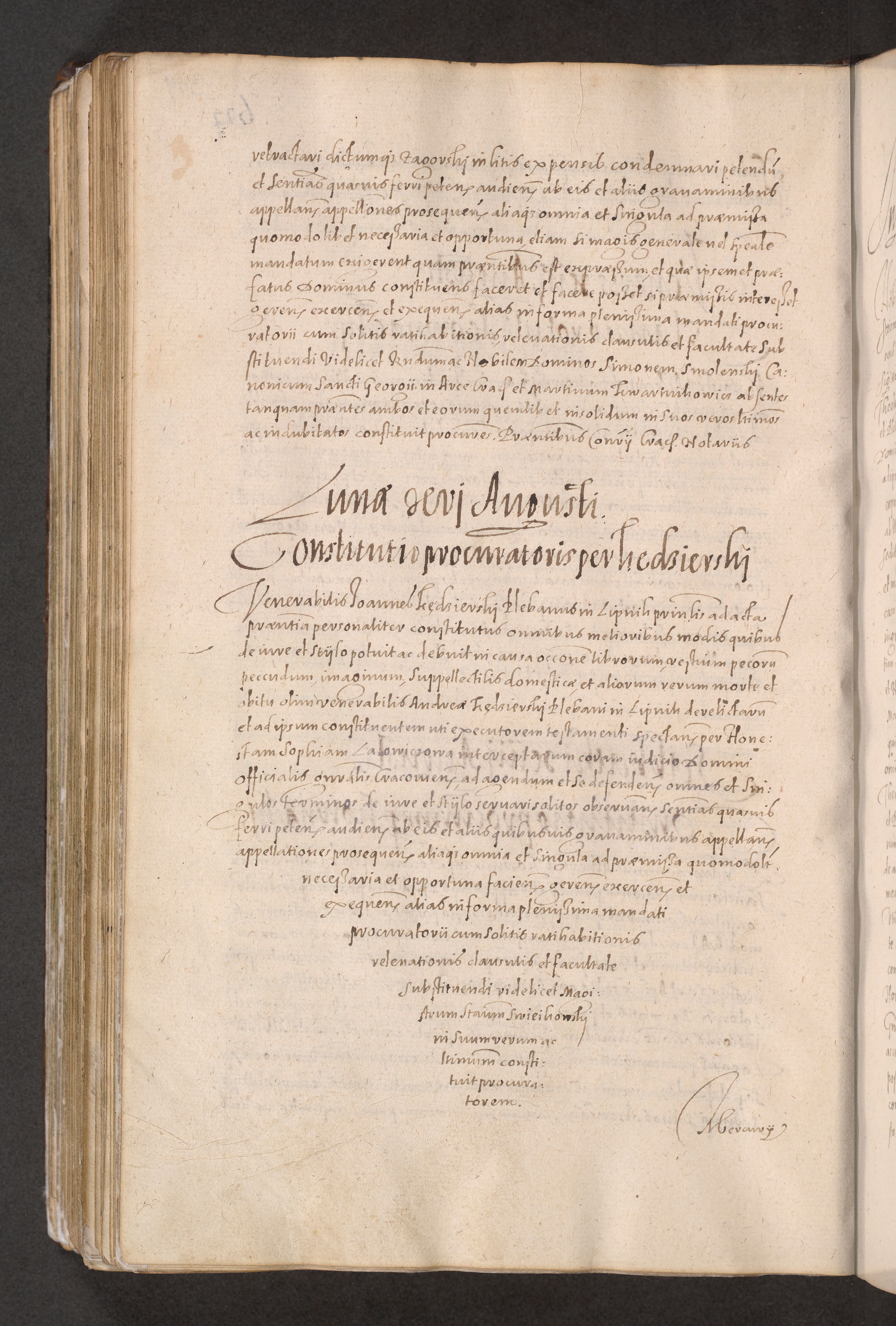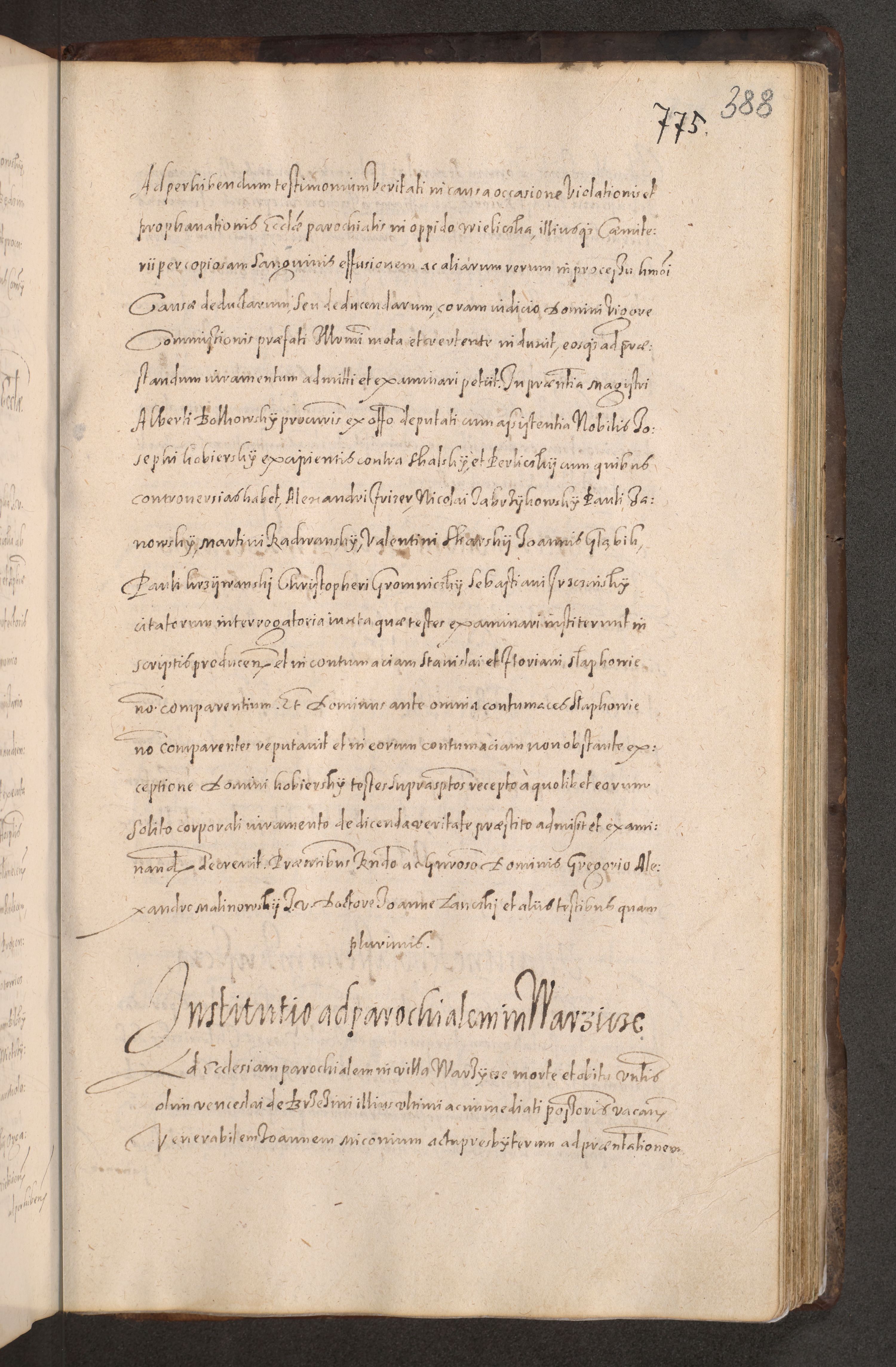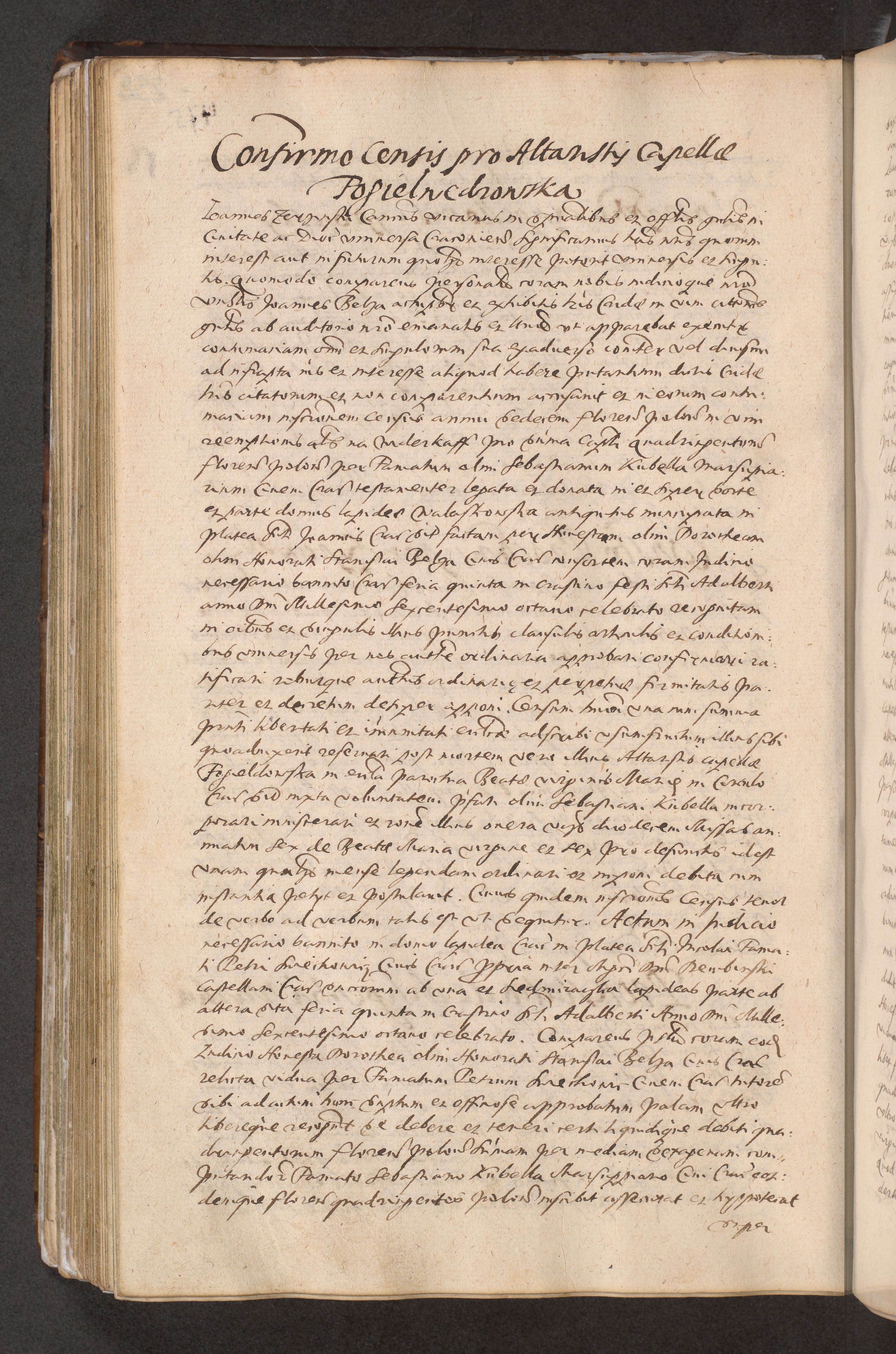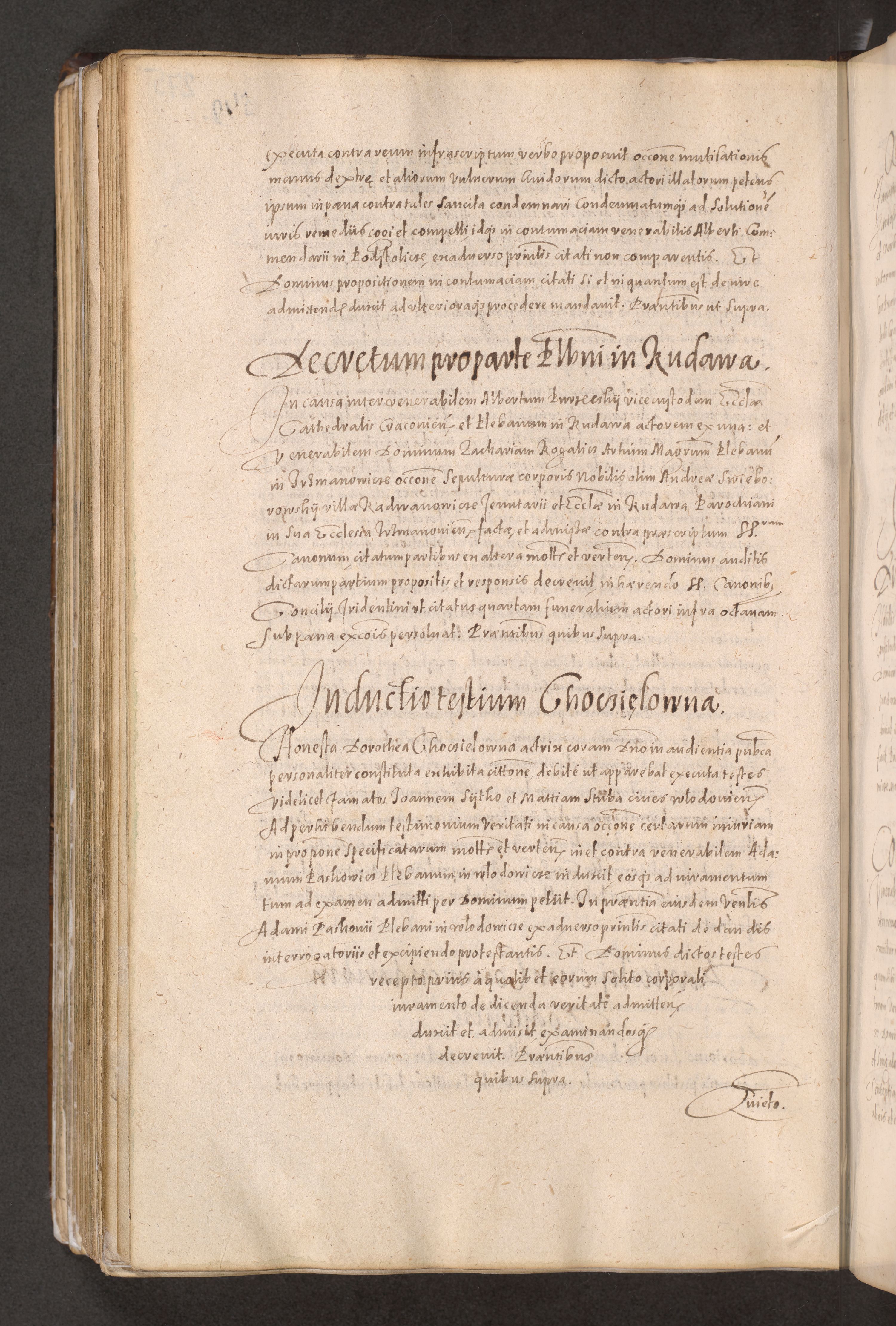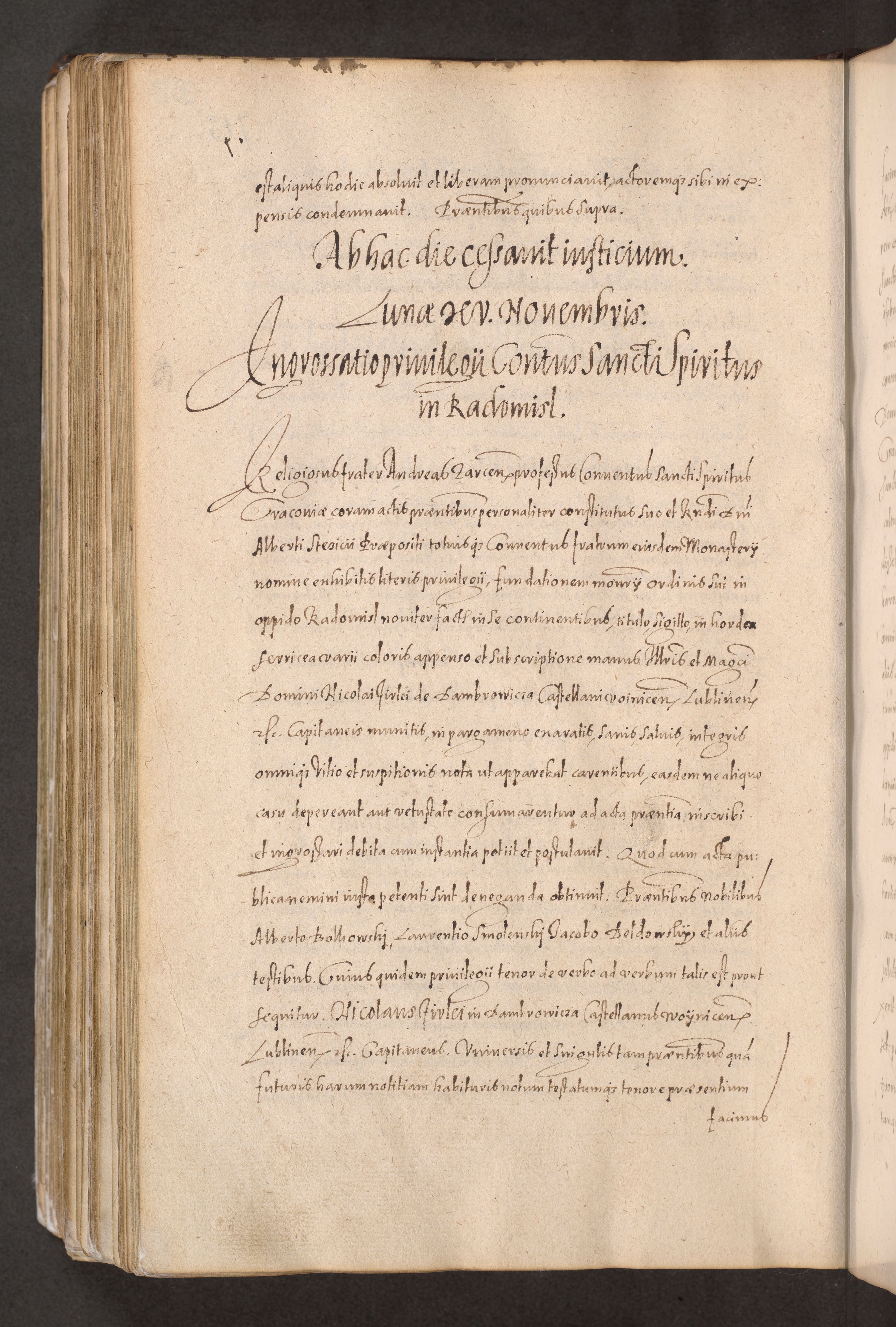 Acta actorum causarum obligationum institutionum decretorum constitutionum quietationum resignationum cissionum et atiaru obsernationum tam indiciariarum quam extra indiciariarum coram Admodum Reverendo Domino Joanne Zerzynski Canonico Vicario in Spiritualibus et Officiali generali Cracoviensis ad Annum Domini Millesimum Sextentissimum Vigesimum Indictione tertia Pontificatus SSmi D. N. D. Pauli Divina pronidentia Papae V. foeliciter moderni anno ipsins subfelici regimine Diocesis Cracoviensis Illustrissimi ac Reverendissimi D. N. D. Martini Szyszkowski Deigratia Episcopus Cracoviensis Ducis Severiensis in continuantur.