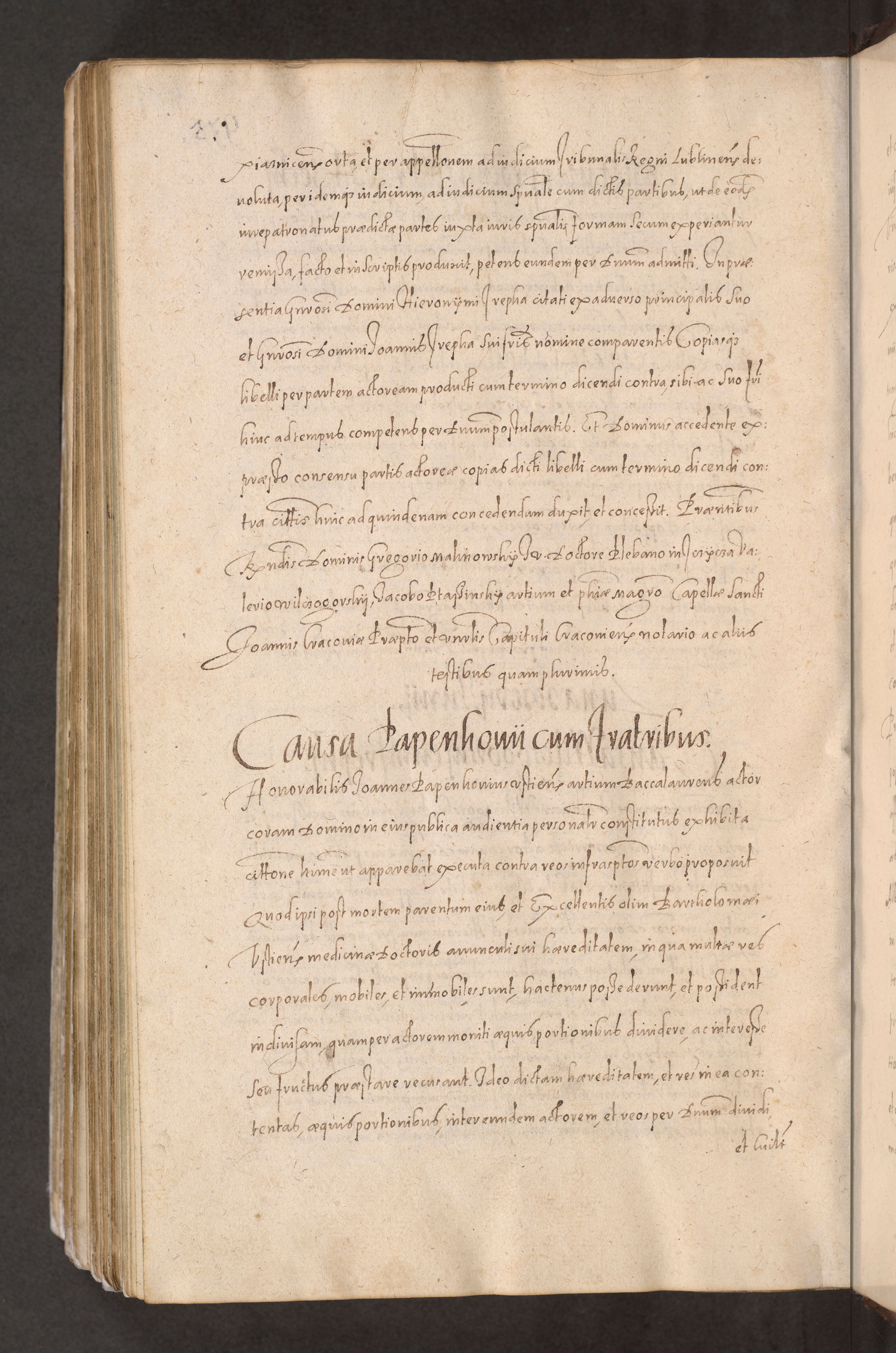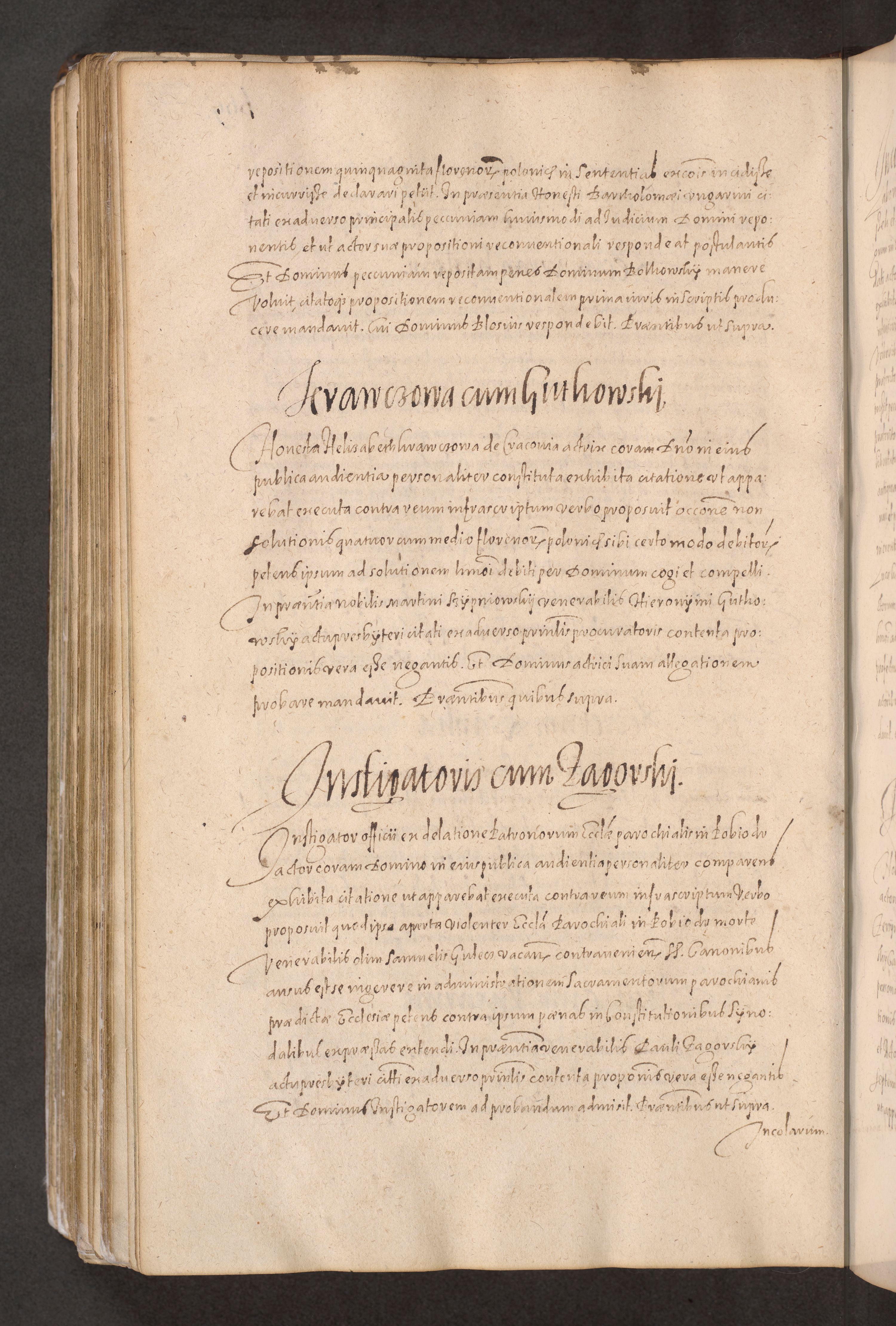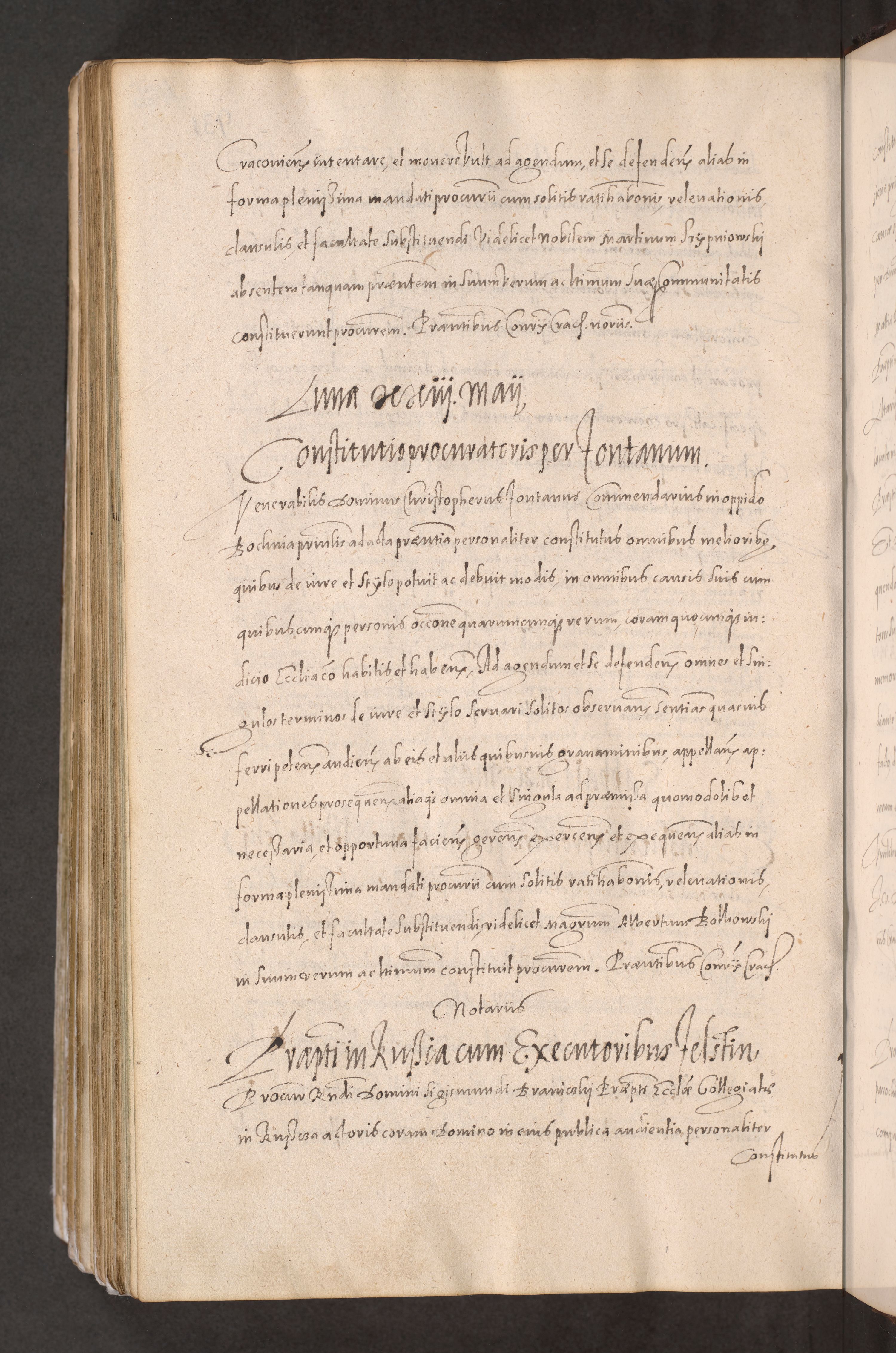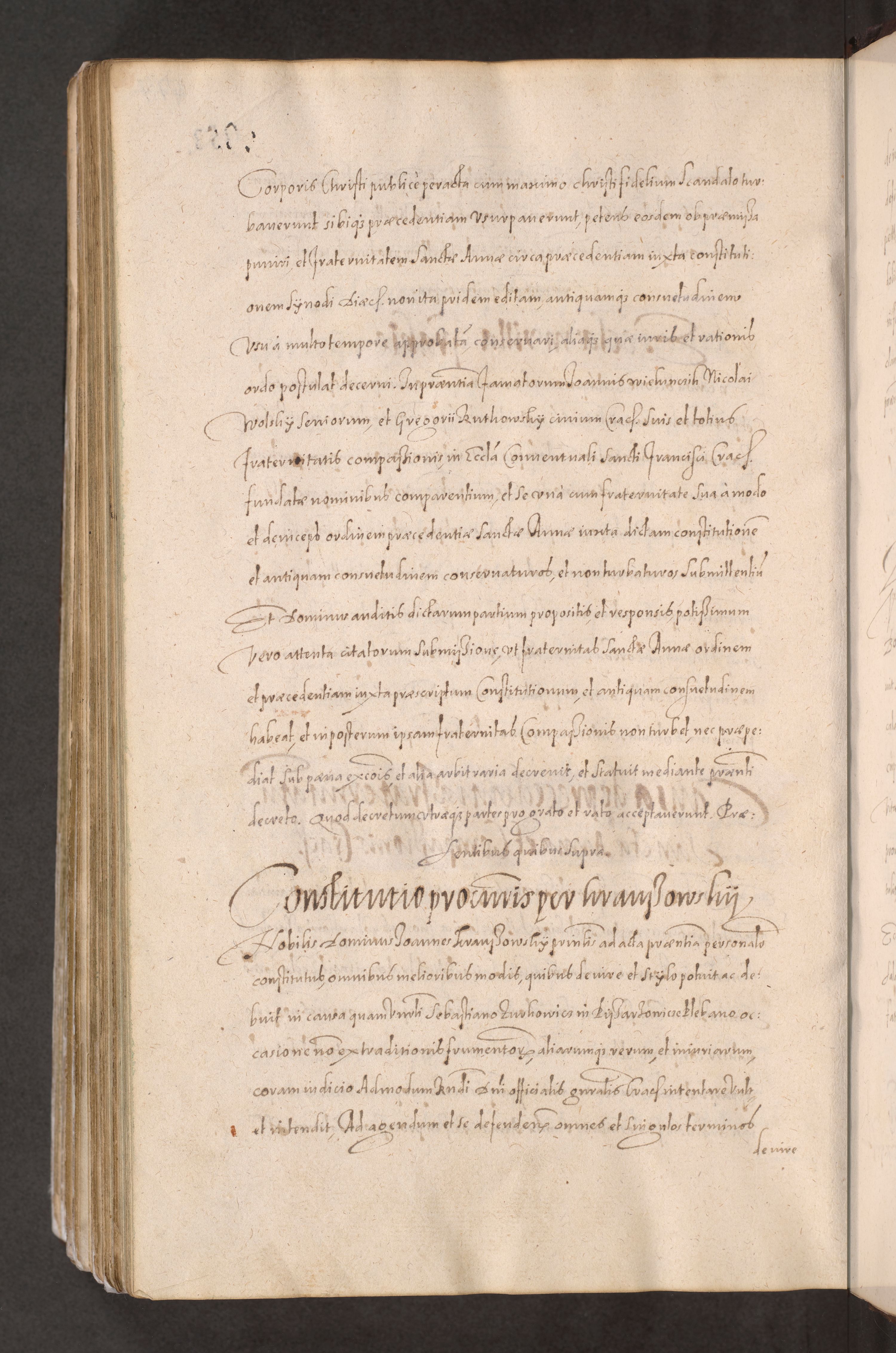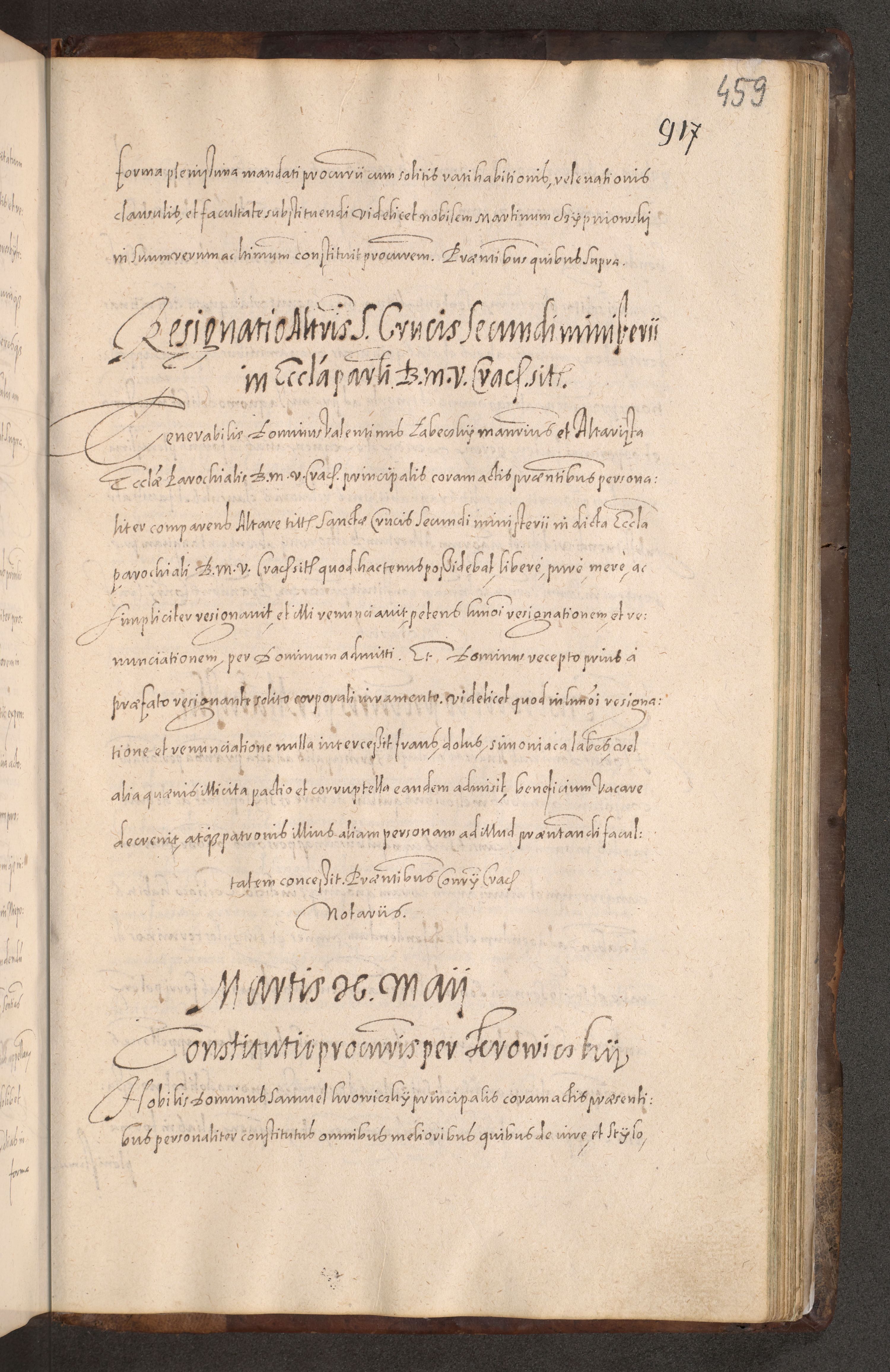 Acta actorum causarum obligationum institutionum decretorum constitutionum quietationum resignationum cissionum et atiaru obsernationum tam indiciariarum quam extra indiciariarum coram Admodum Reverendo Domino Joanne Zerzynski Canonico Vicario in Spiritualibus et Officiali generali Cracoviensis ad Annum Domini Millesimum Sextentissimum Vigesimum Indictione tertia Pontificatus SSmi D. N. D. Pauli Divina pronidentia Papae V. foeliciter moderni anno ipsins subfelici regimine Diocesis Cracoviensis Illustrissimi ac Reverendissimi D. N. D. Martini Szyszkowski Deigratia Episcopus Cracoviensis Ducis Severiensis in continuantur.
