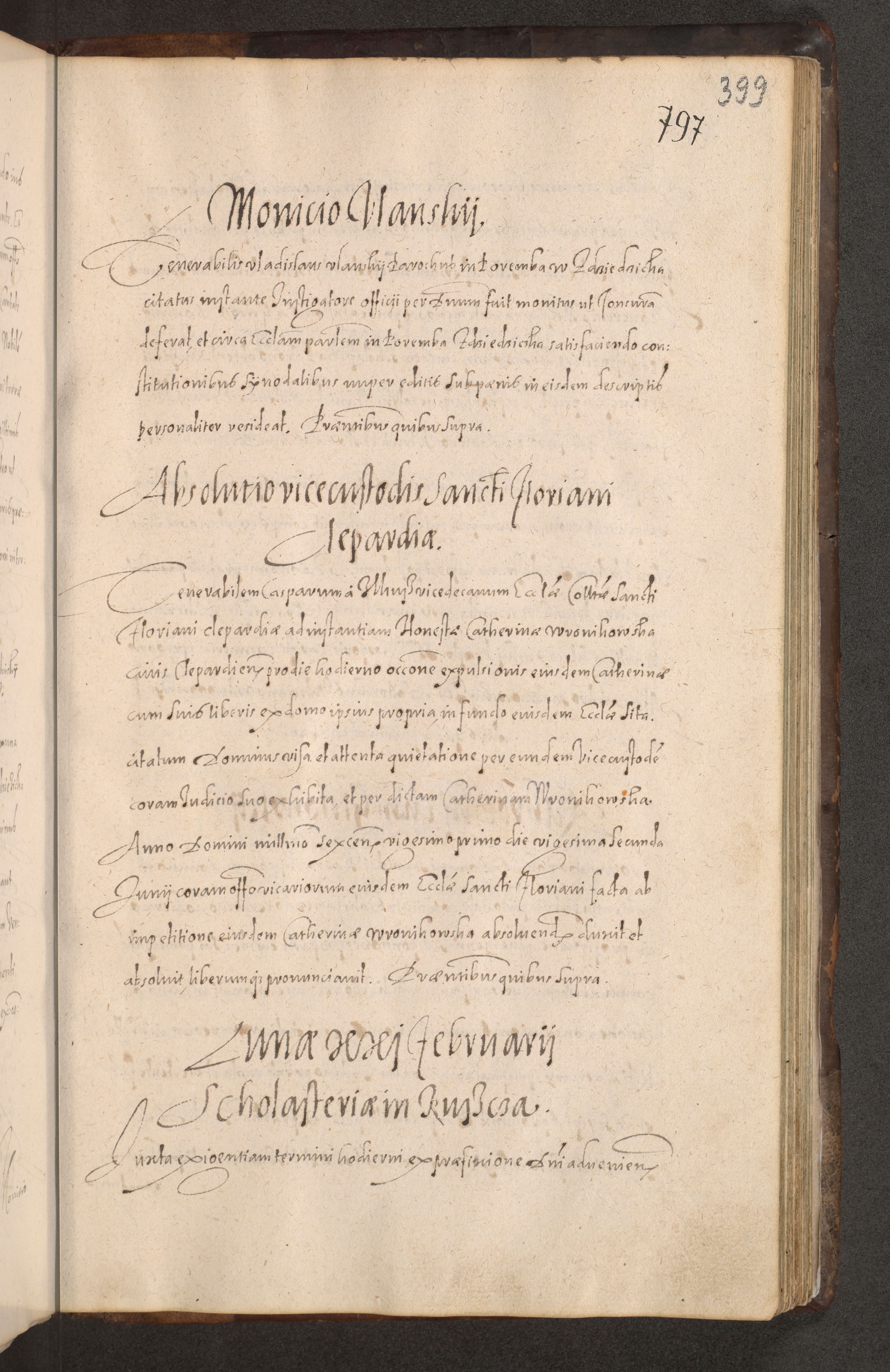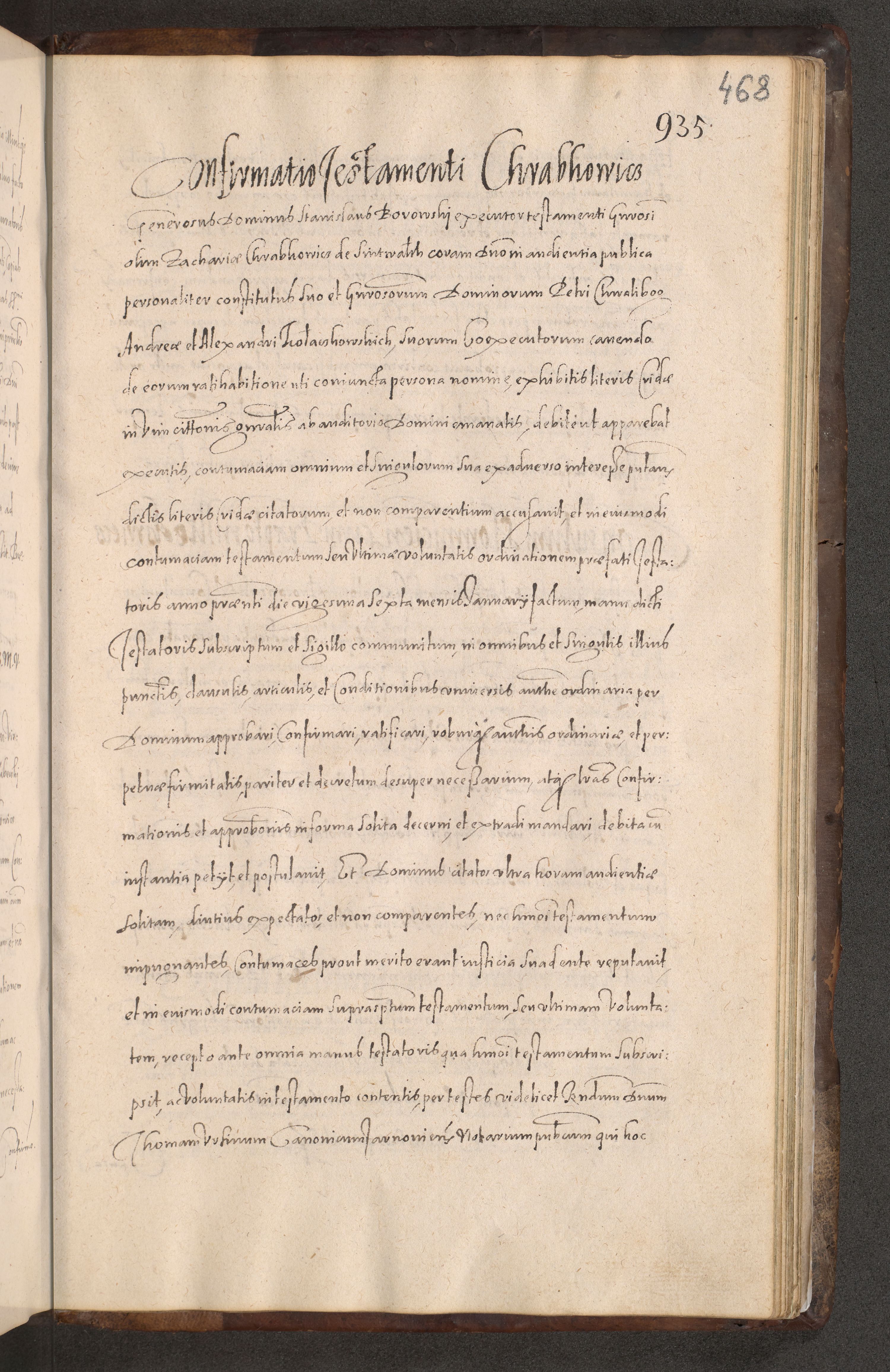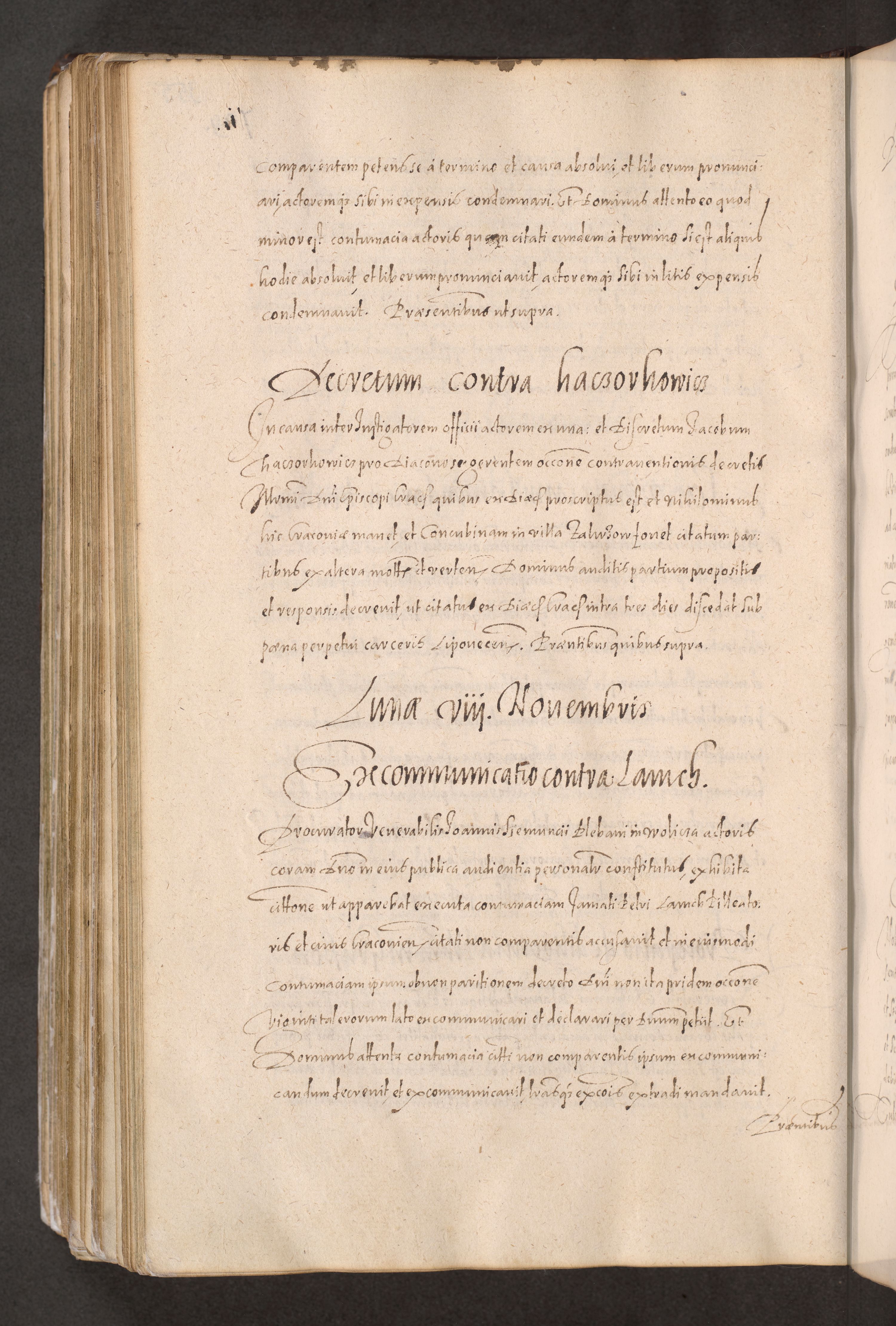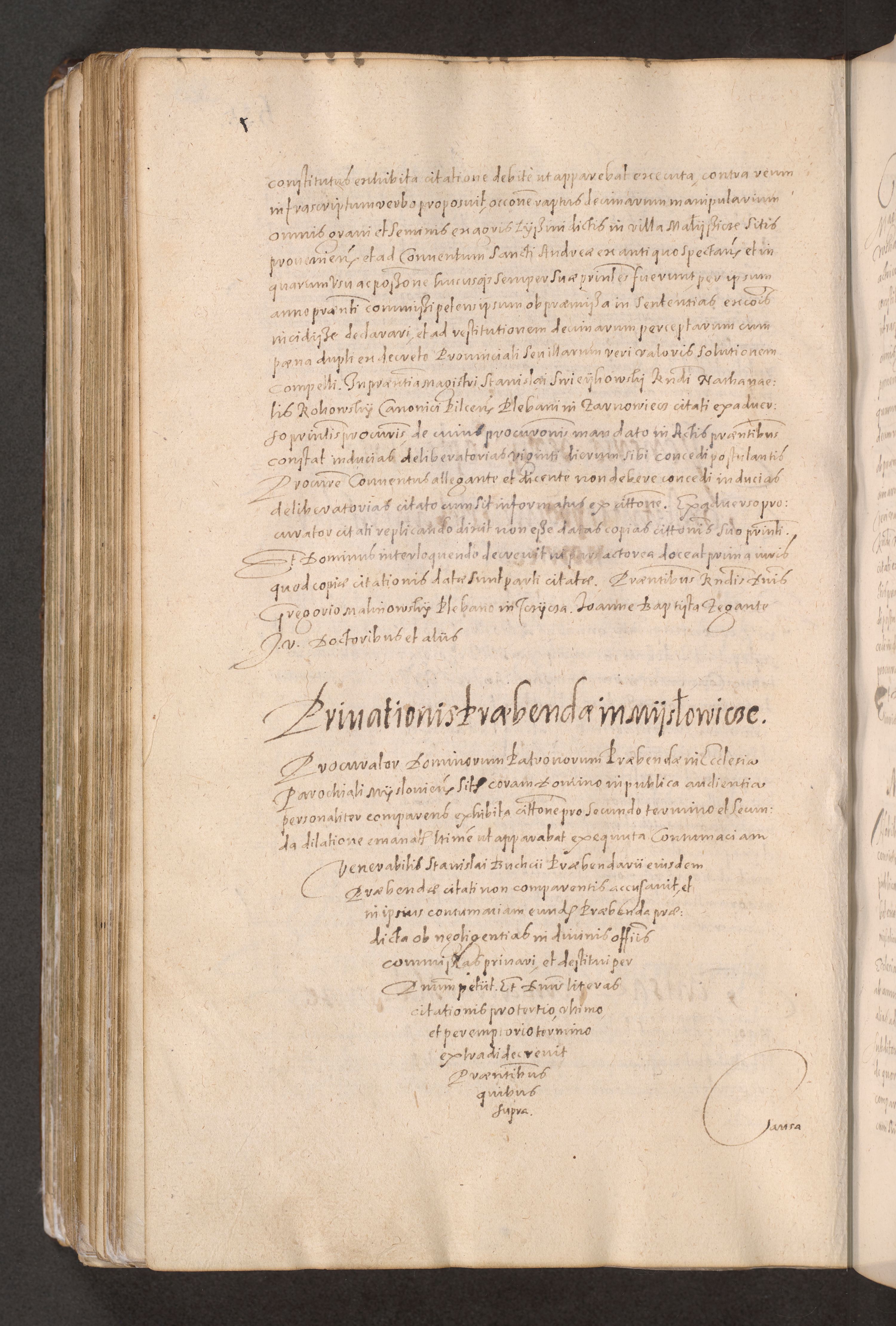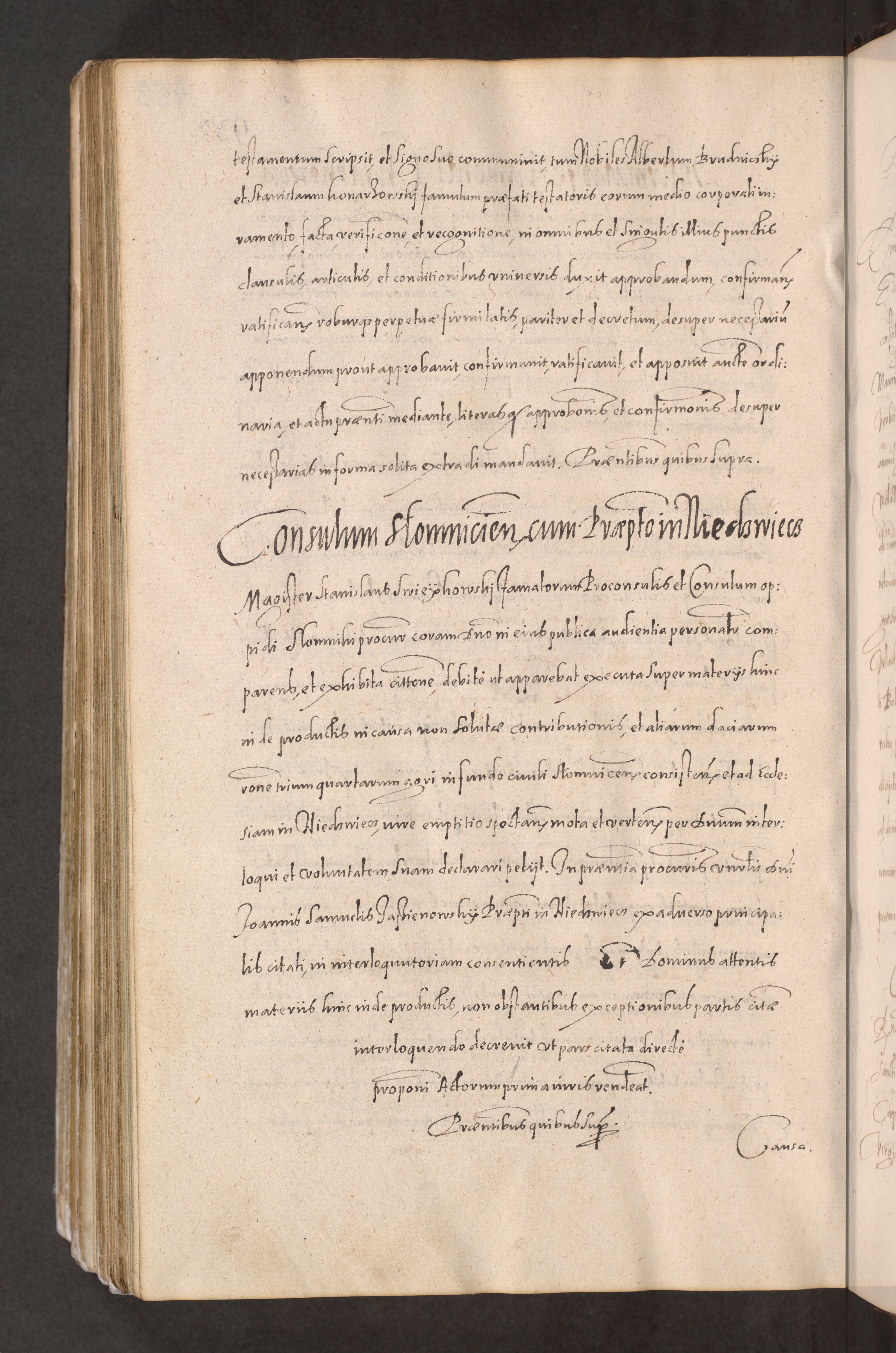 Acta actorum causarum obligationum institutionum decretorum constitutionum quietationum resignationum cissionum et atiaru obsernationum tam indiciariarum quam extra indiciariarum coram Admodum Reverendo Domino Joanne Zerzynski Canonico Vicario in Spiritualibus et Officiali generali Cracoviensis ad Annum Domini Millesimum Sextentissimum Vigesimum Indictione tertia Pontificatus SSmi D. N. D. Pauli Divina pronidentia Papae V. foeliciter moderni anno ipsins subfelici regimine Diocesis Cracoviensis Illustrissimi ac Reverendissimi D. N. D. Martini Szyszkowski Deigratia Episcopus Cracoviensis Ducis Severiensis in continuantur.