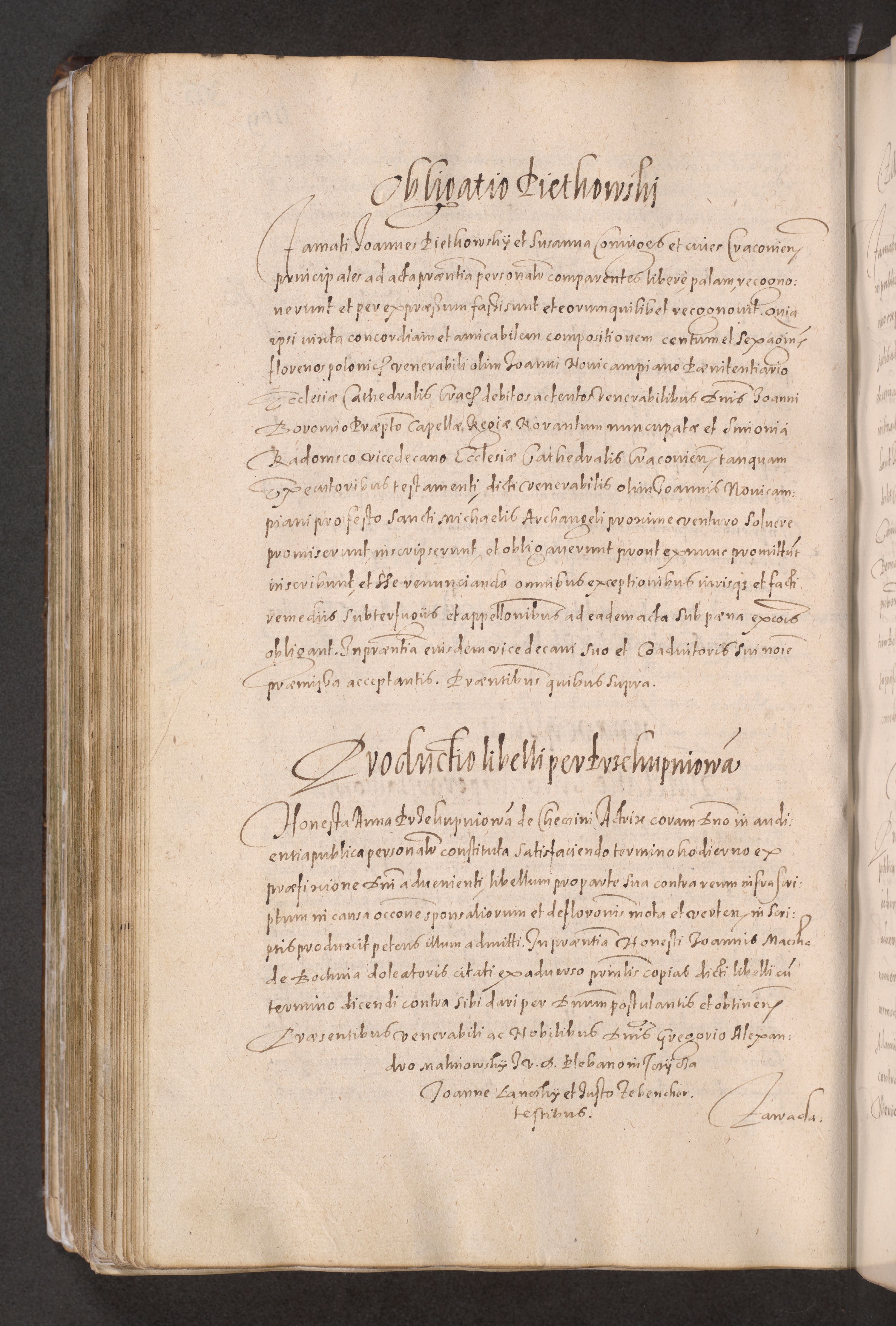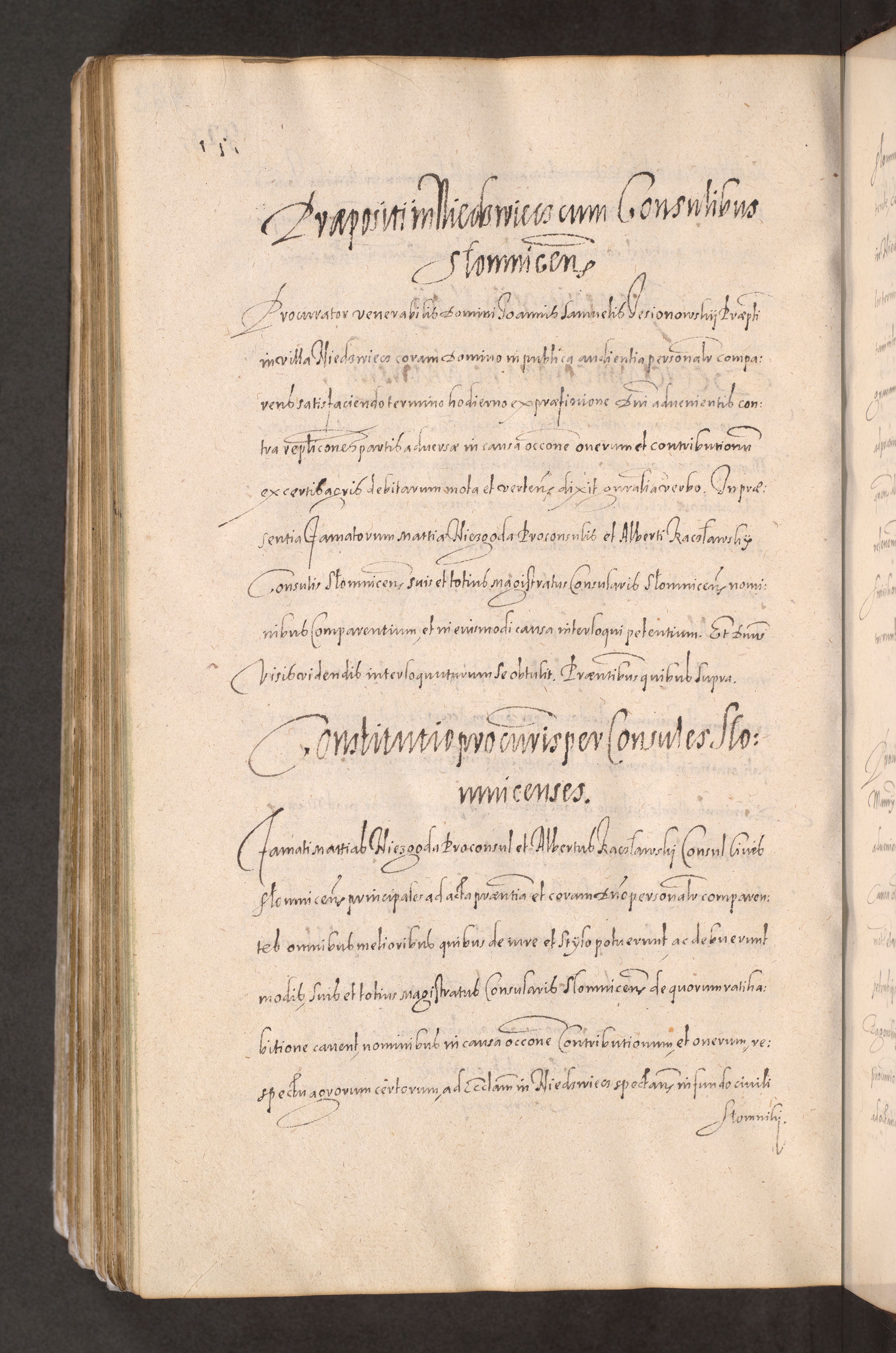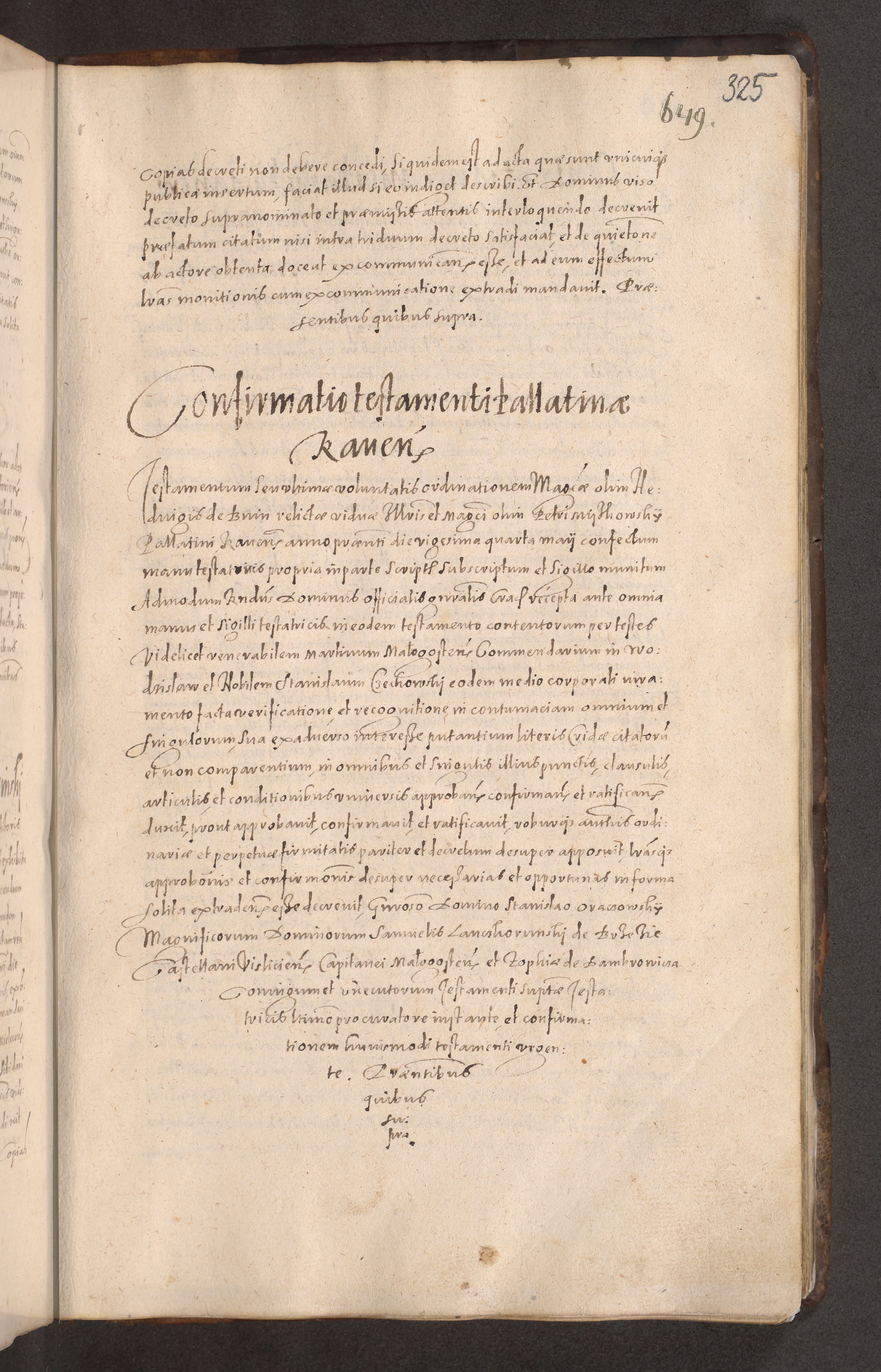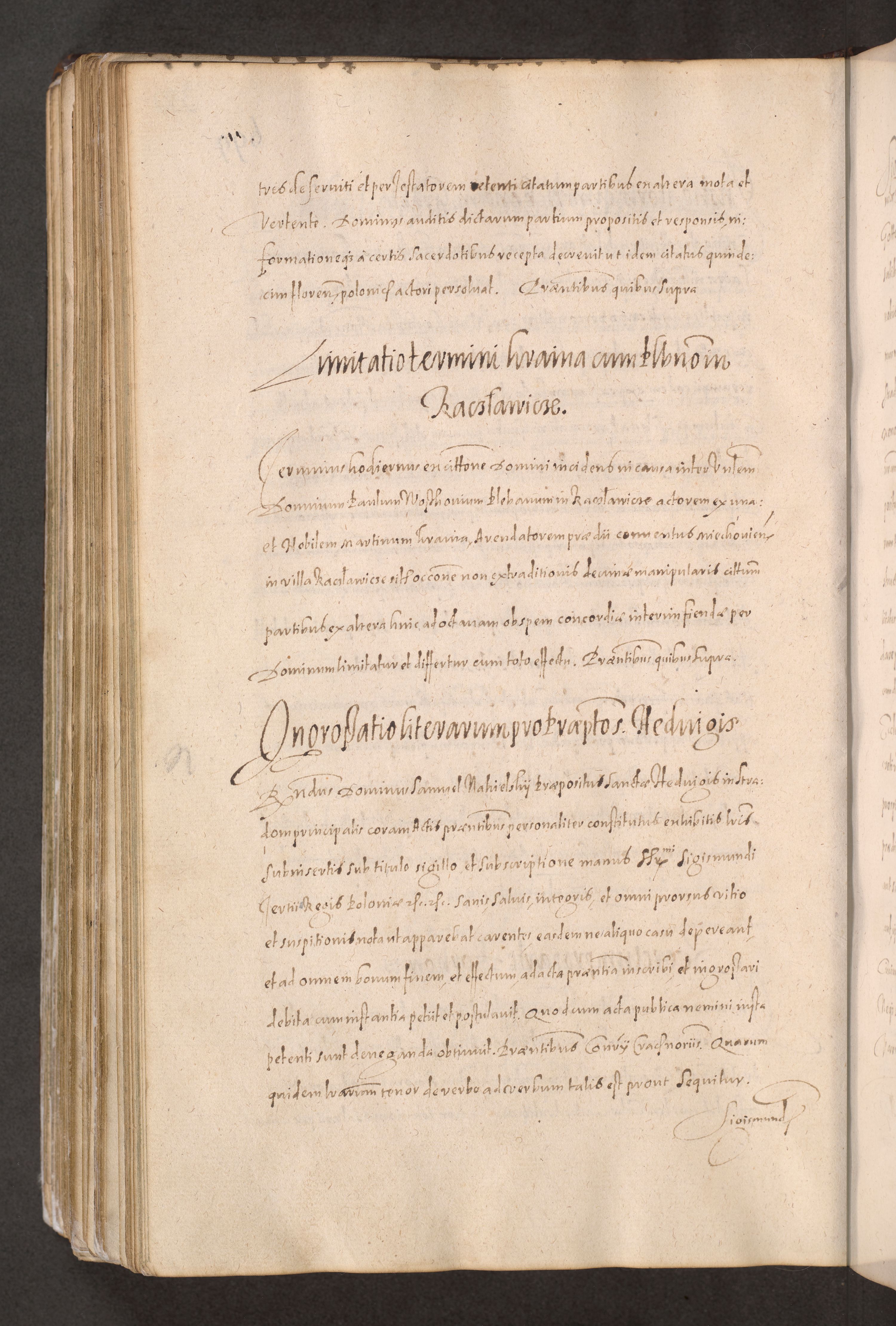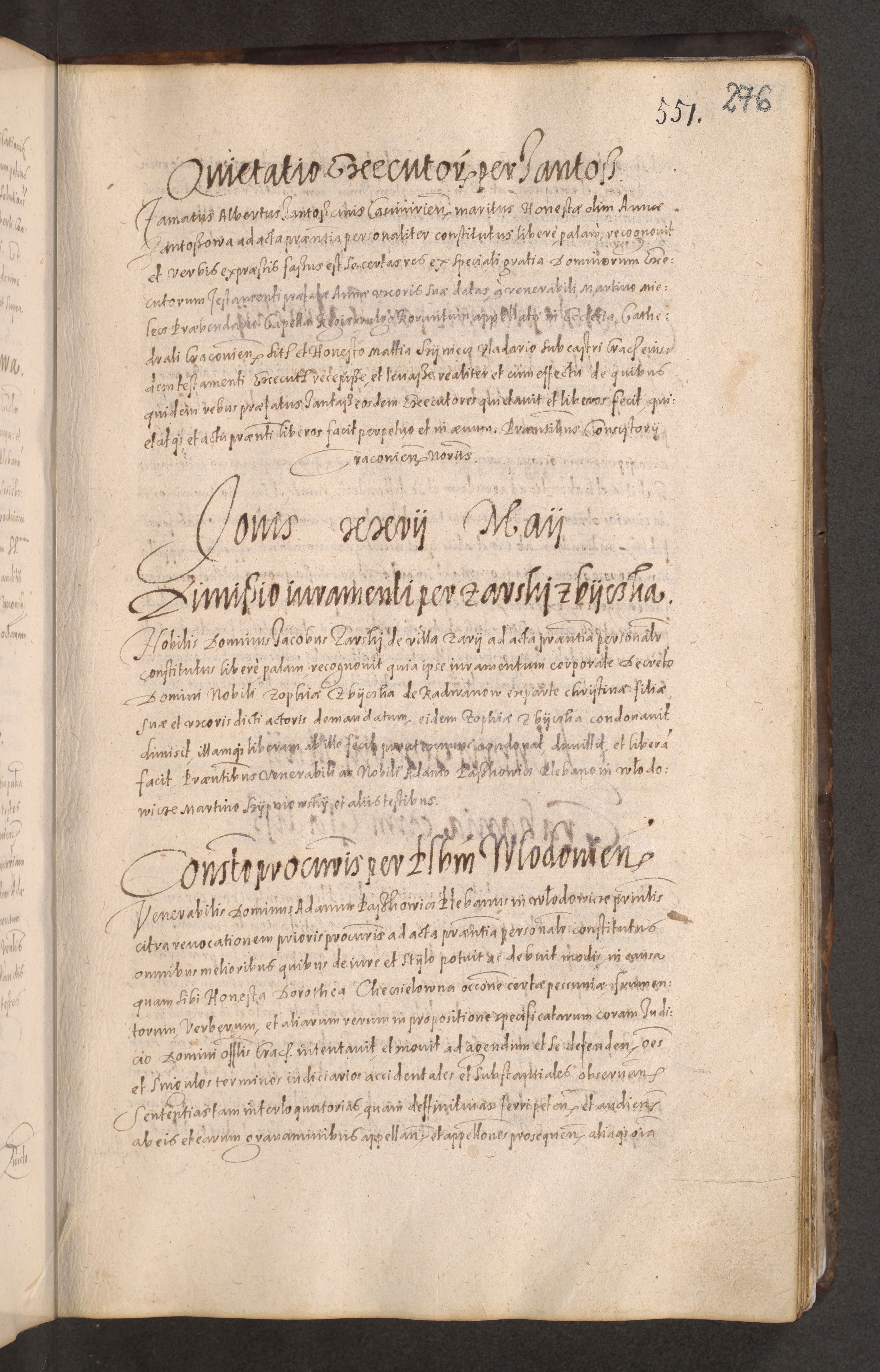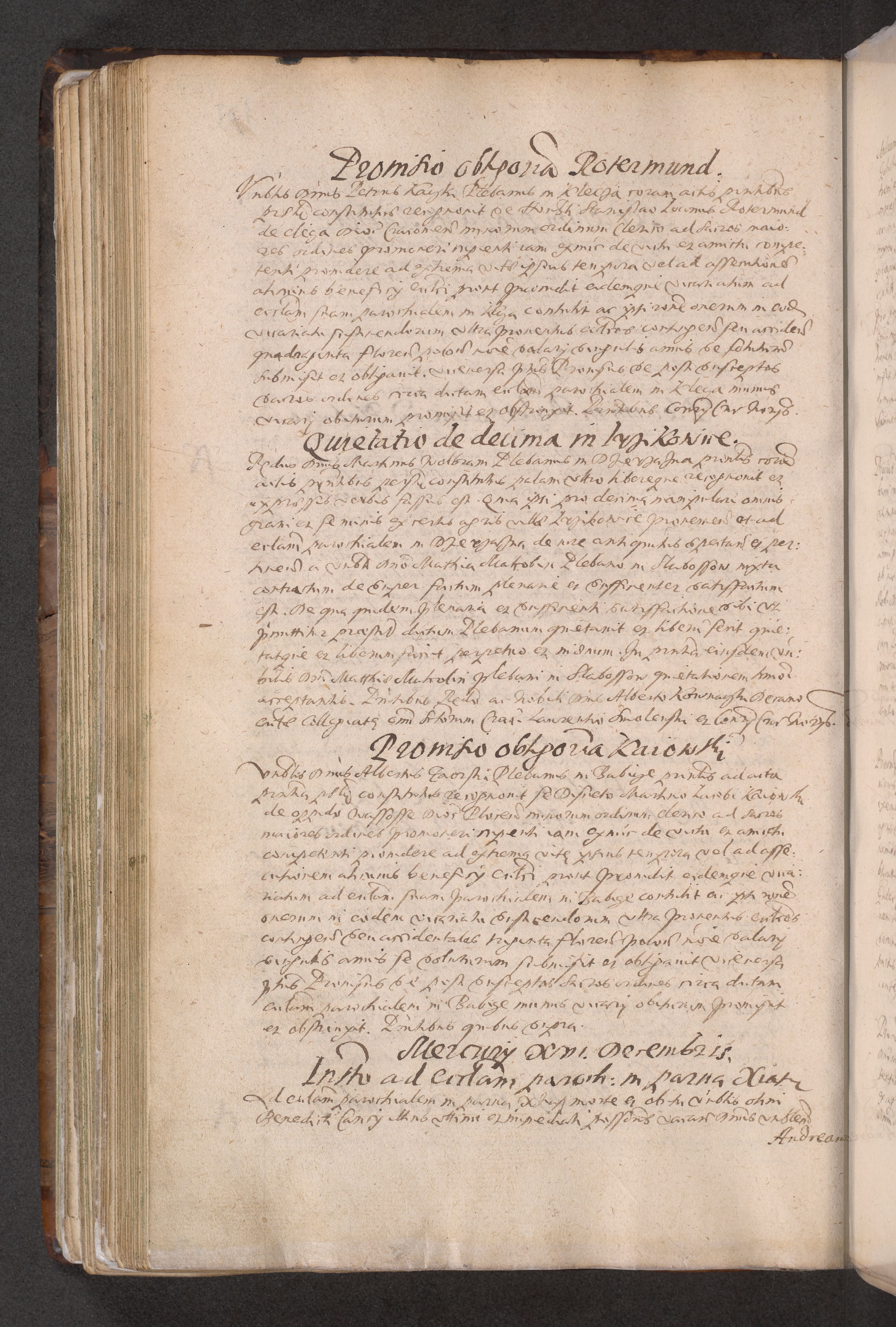 Acta actorum causarum obligationum institutionum decretorum constitutionum quietationum resignationum cissionum et atiaru obsernationum tam indiciariarum quam extra indiciariarum coram Admodum Reverendo Domino Joanne Zerzynski Canonico Vicario in Spiritualibus et Officiali generali Cracoviensis ad Annum Domini Millesimum Sextentissimum Vigesimum Indictione tertia Pontificatus SSmi D. N. D. Pauli Divina pronidentia Papae V. foeliciter moderni anno ipsins subfelici regimine Diocesis Cracoviensis Illustrissimi ac Reverendissimi D. N. D. Martini Szyszkowski Deigratia Episcopus Cracoviensis Ducis Severiensis in continuantur.