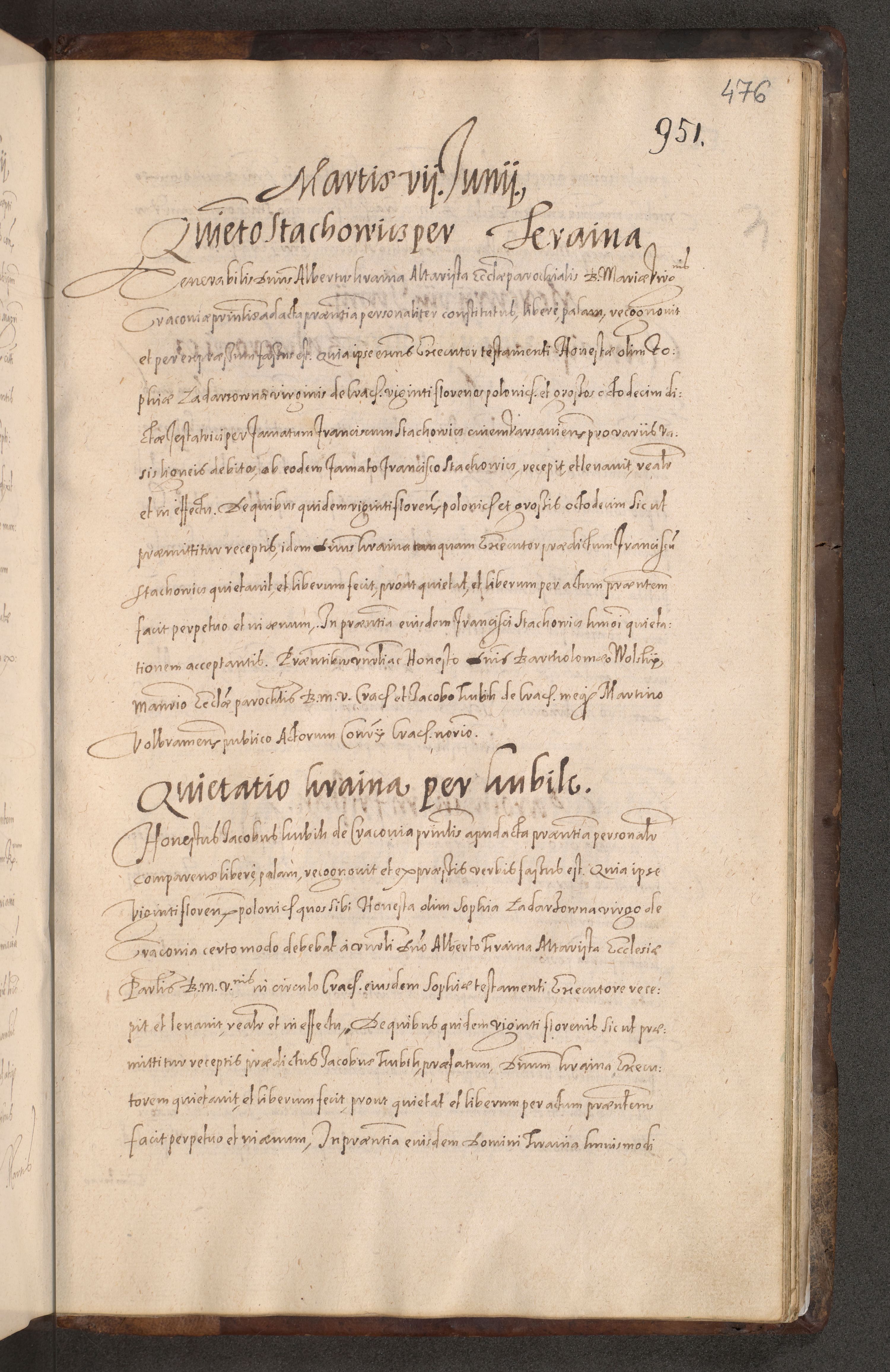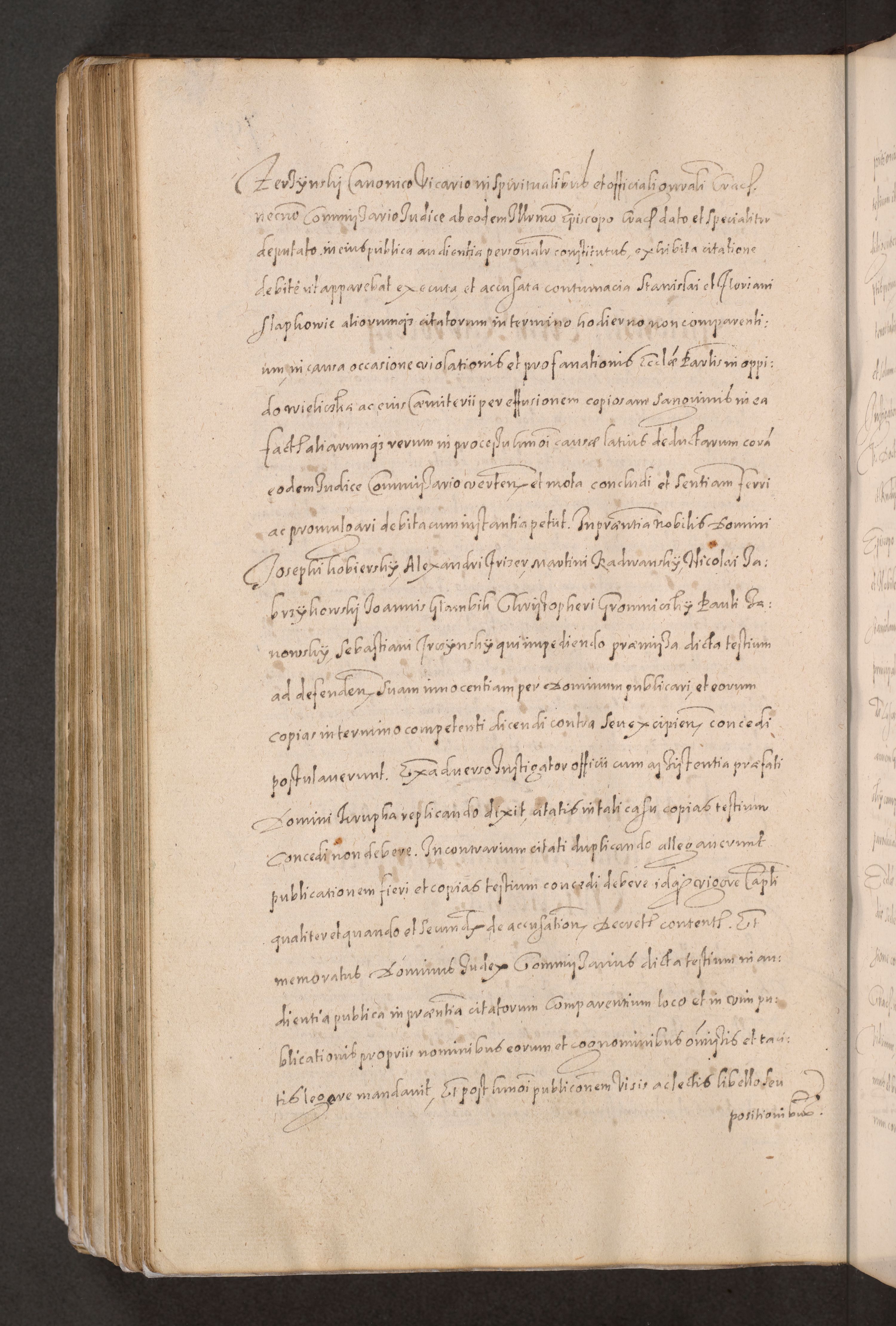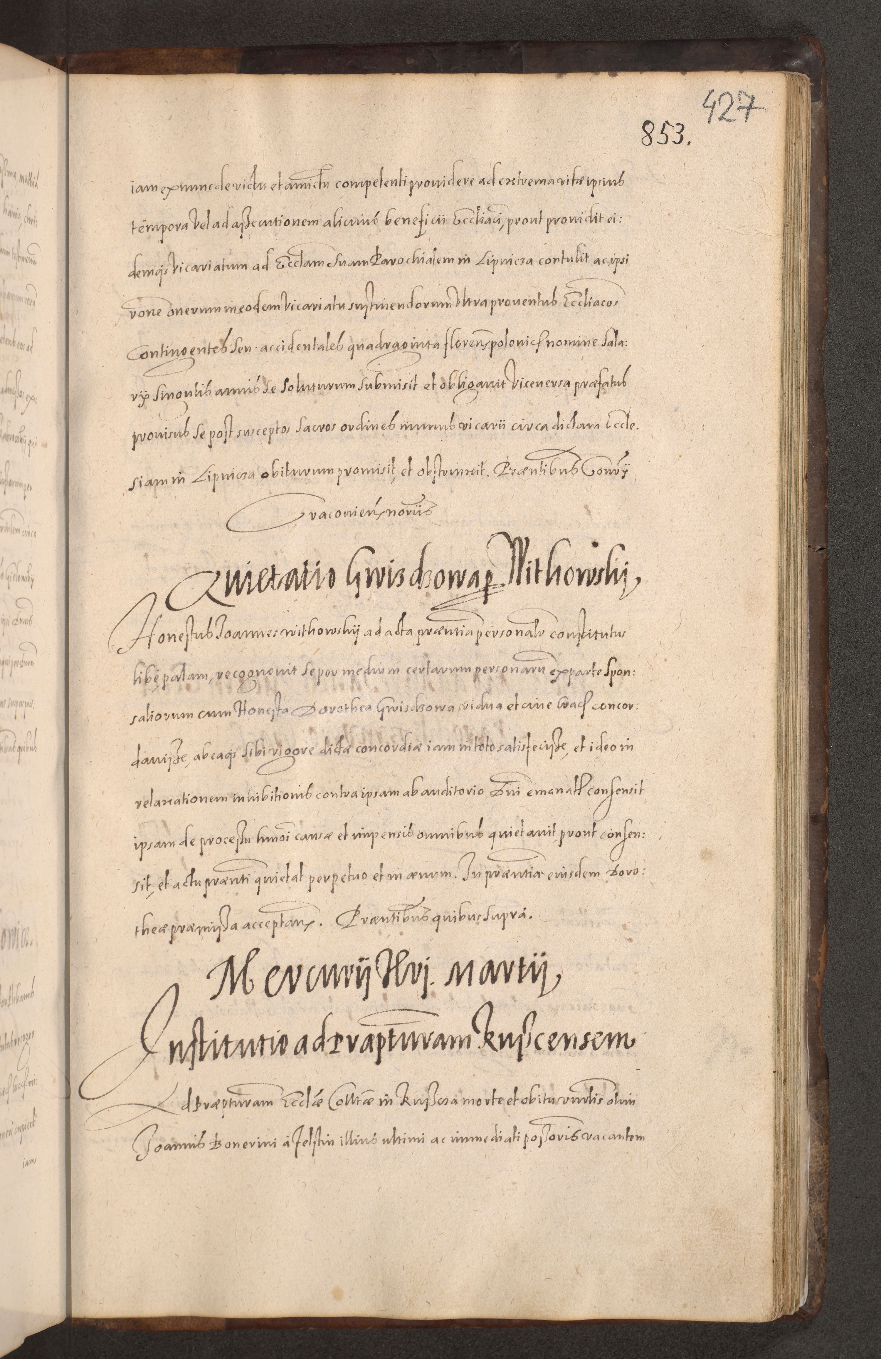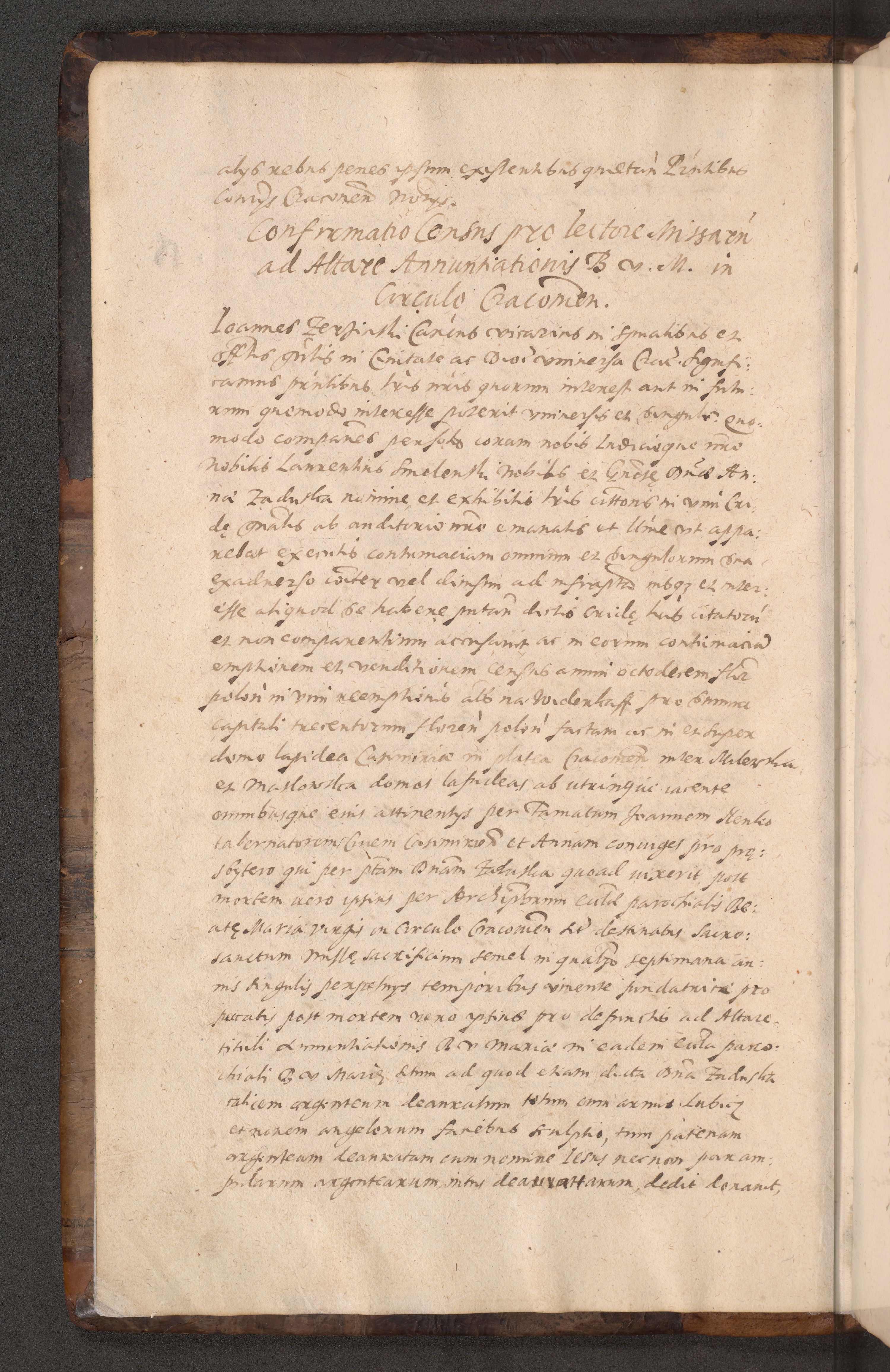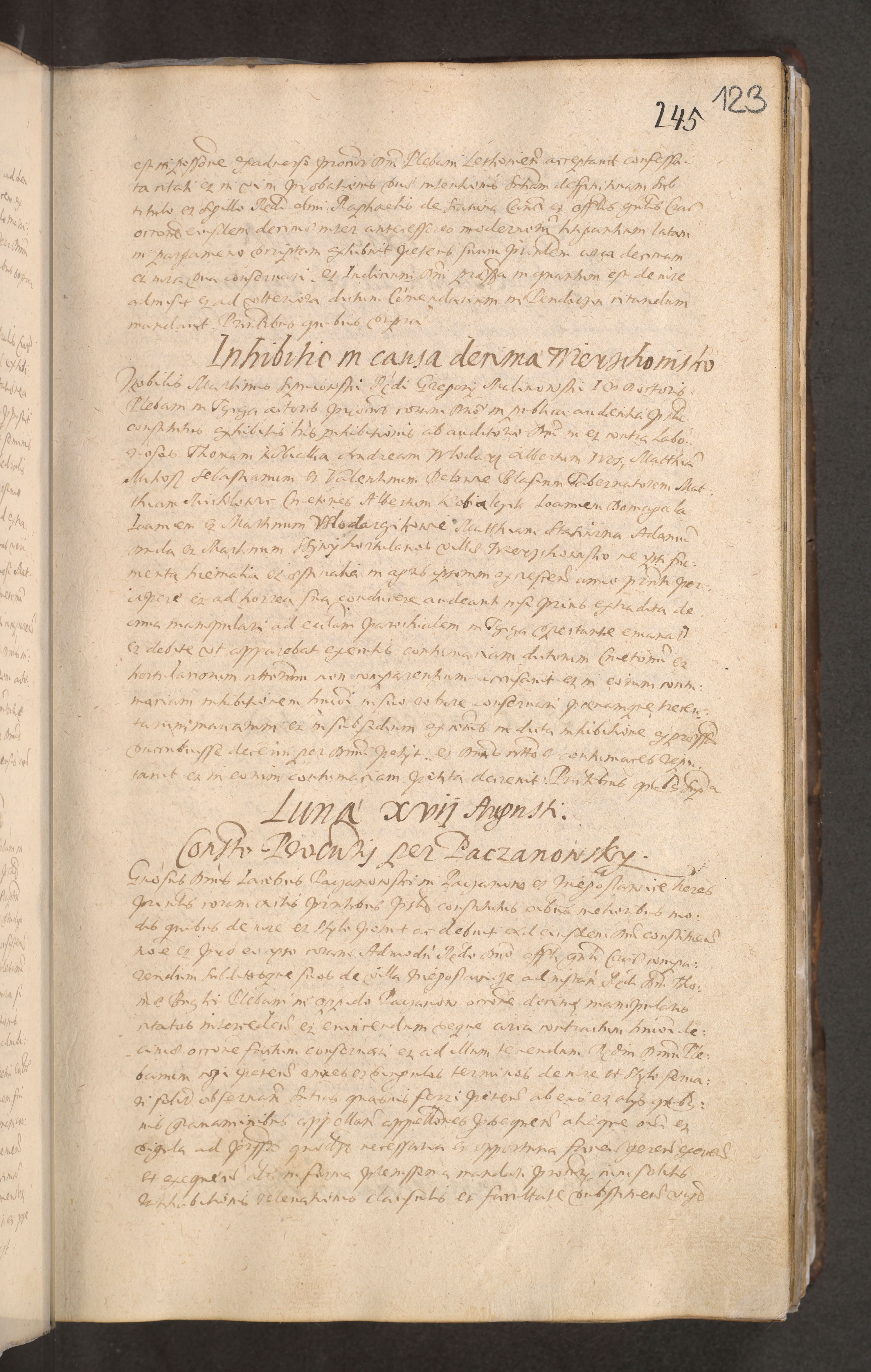 Acta actorum causarum obligationum institutionum decretorum constitutionum quietationum resignationum cissionum et atiaru obsernationum tam indiciariarum quam extra indiciariarum coram Admodum Reverendo Domino Joanne Zerzynski Canonico Vicario in Spiritualibus et Officiali generali Cracoviensis ad Annum Domini Millesimum Sextentissimum Vigesimum Indictione tertia Pontificatus SSmi D. N. D. Pauli Divina pronidentia Papae V. foeliciter moderni anno ipsins subfelici regimine Diocesis Cracoviensis Illustrissimi ac Reverendissimi D. N. D. Martini Szyszkowski Deigratia Episcopus Cracoviensis Ducis Severiensis in continuantur.