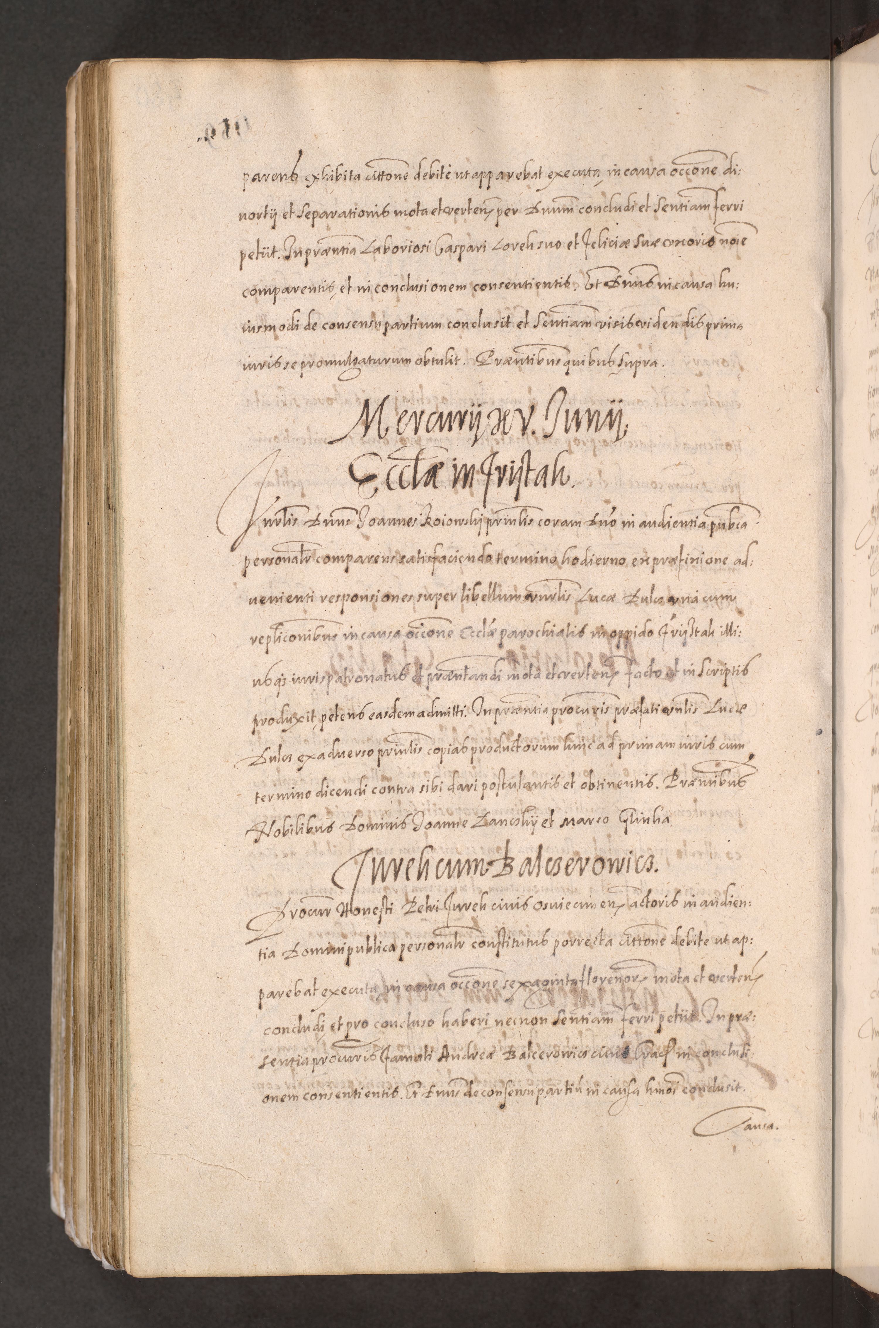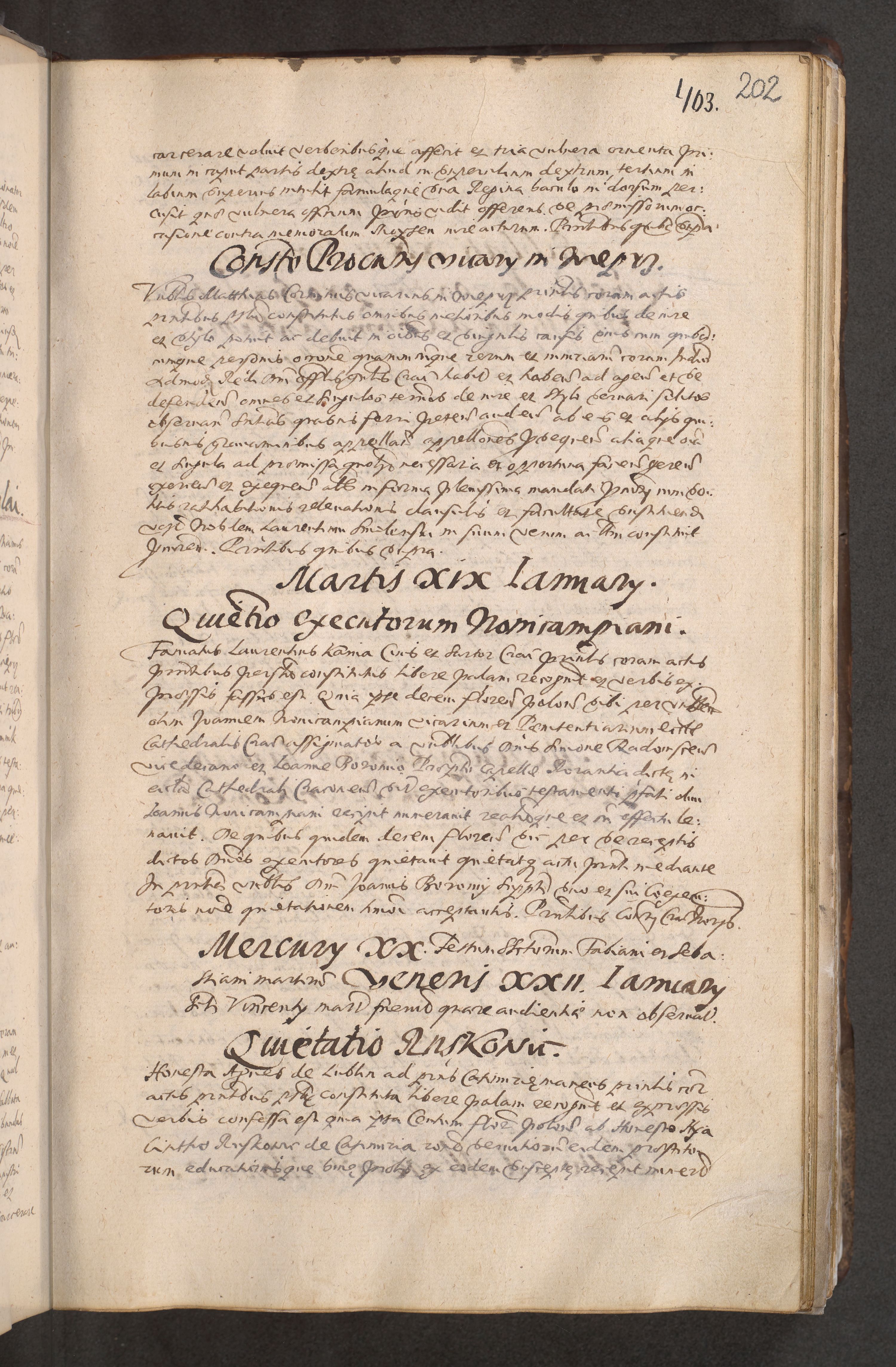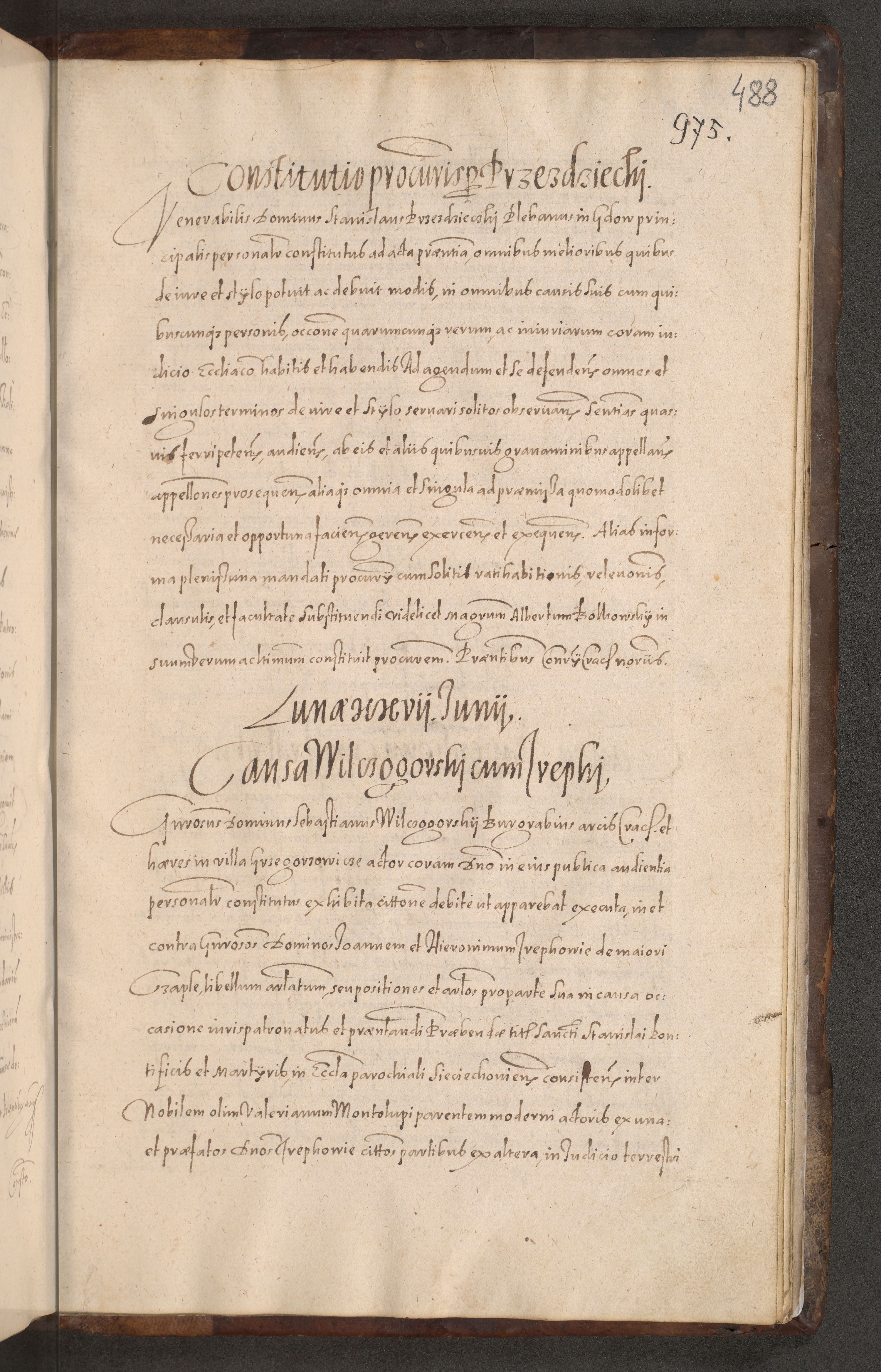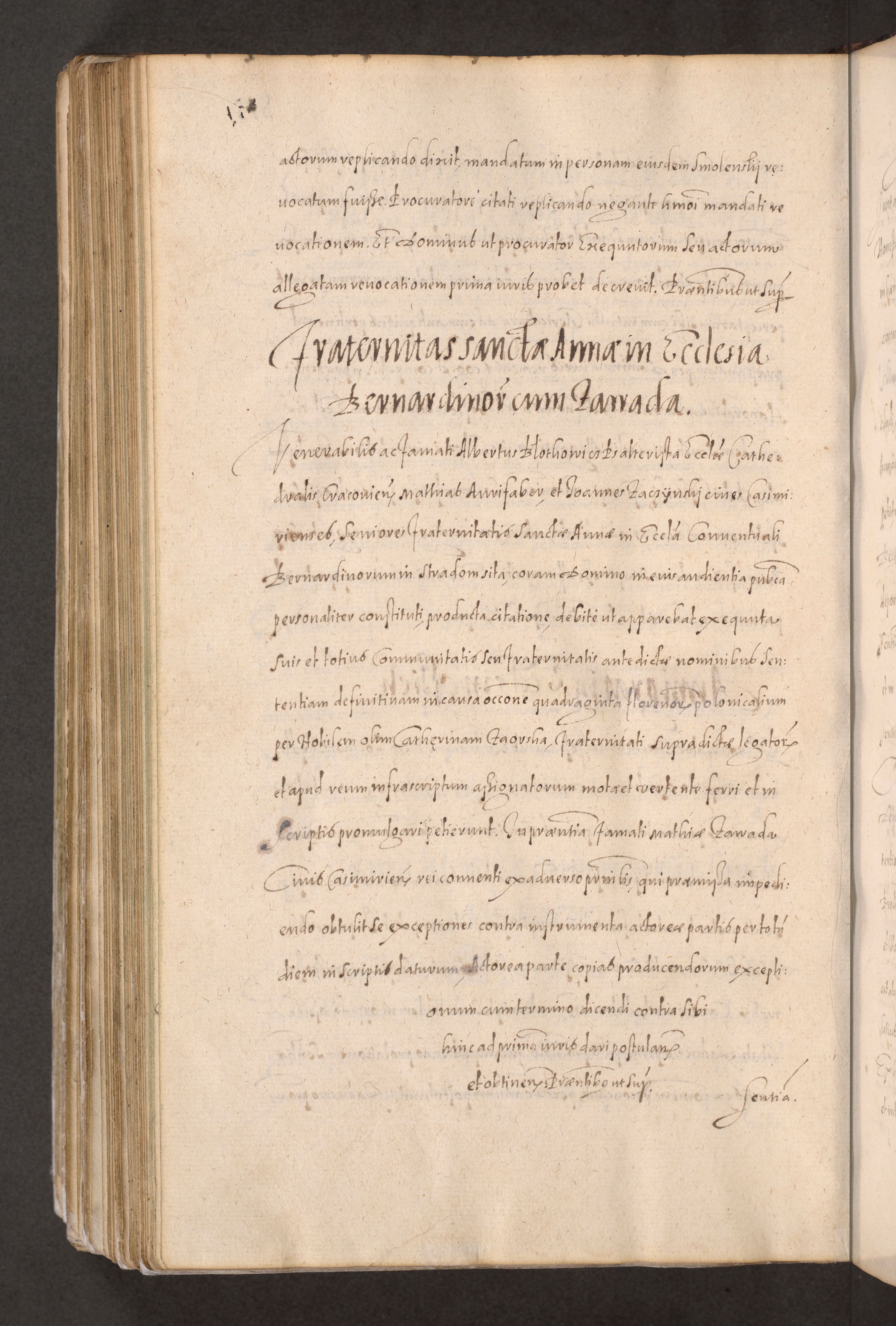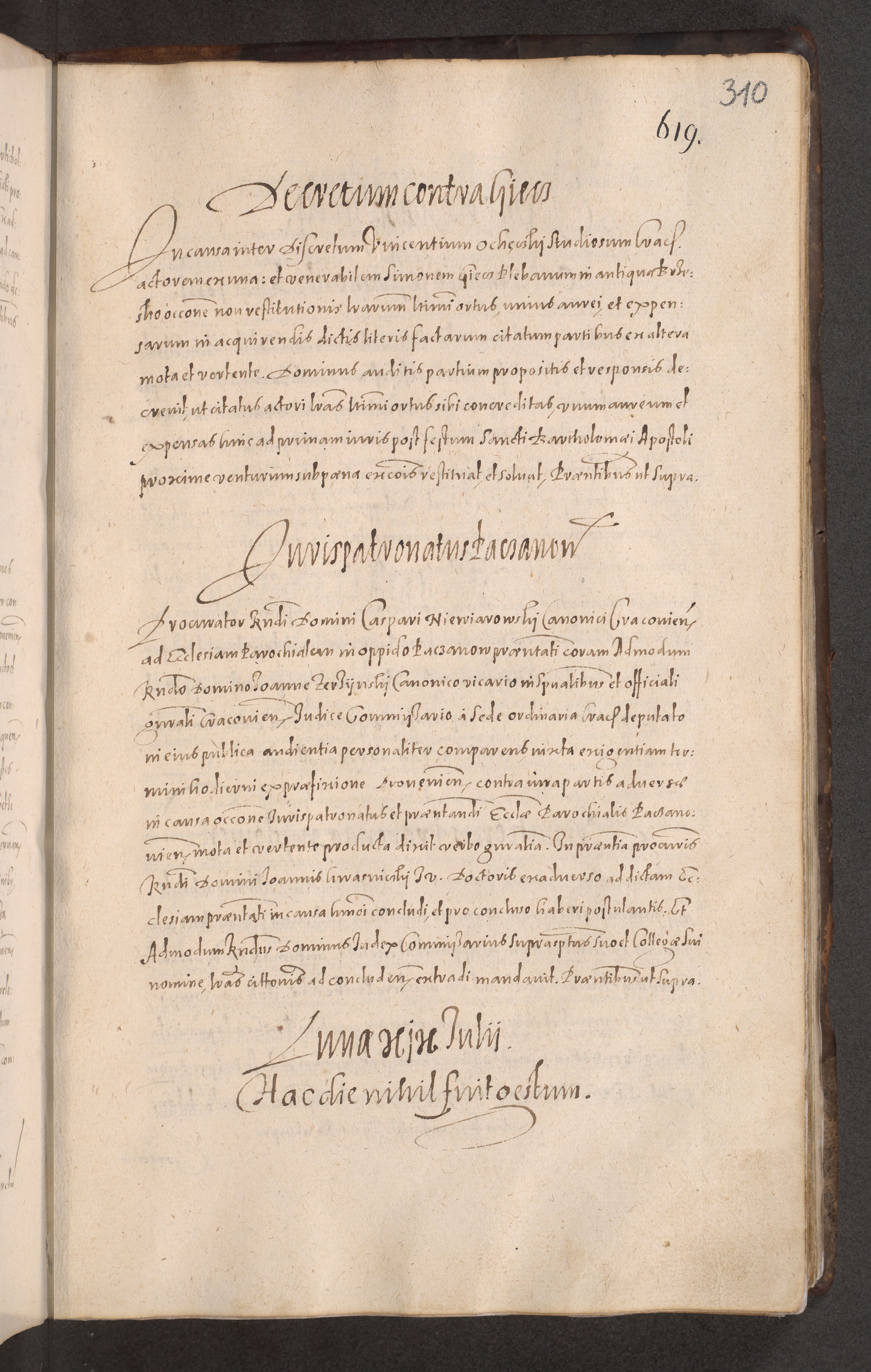 Acta actorum causarum obligationum institutionum decretorum constitutionum quietationum resignationum cissionum et atiaru obsernationum tam indiciariarum quam extra indiciariarum coram Admodum Reverendo Domino Joanne Zerzynski Canonico Vicario in Spiritualibus et Officiali generali Cracoviensis ad Annum Domini Millesimum Sextentissimum Vigesimum Indictione tertia Pontificatus SSmi D. N. D. Pauli Divina pronidentia Papae V. foeliciter moderni anno ipsins subfelici regimine Diocesis Cracoviensis Illustrissimi ac Reverendissimi D. N. D. Martini Szyszkowski Deigratia Episcopus Cracoviensis Ducis Severiensis in continuantur.