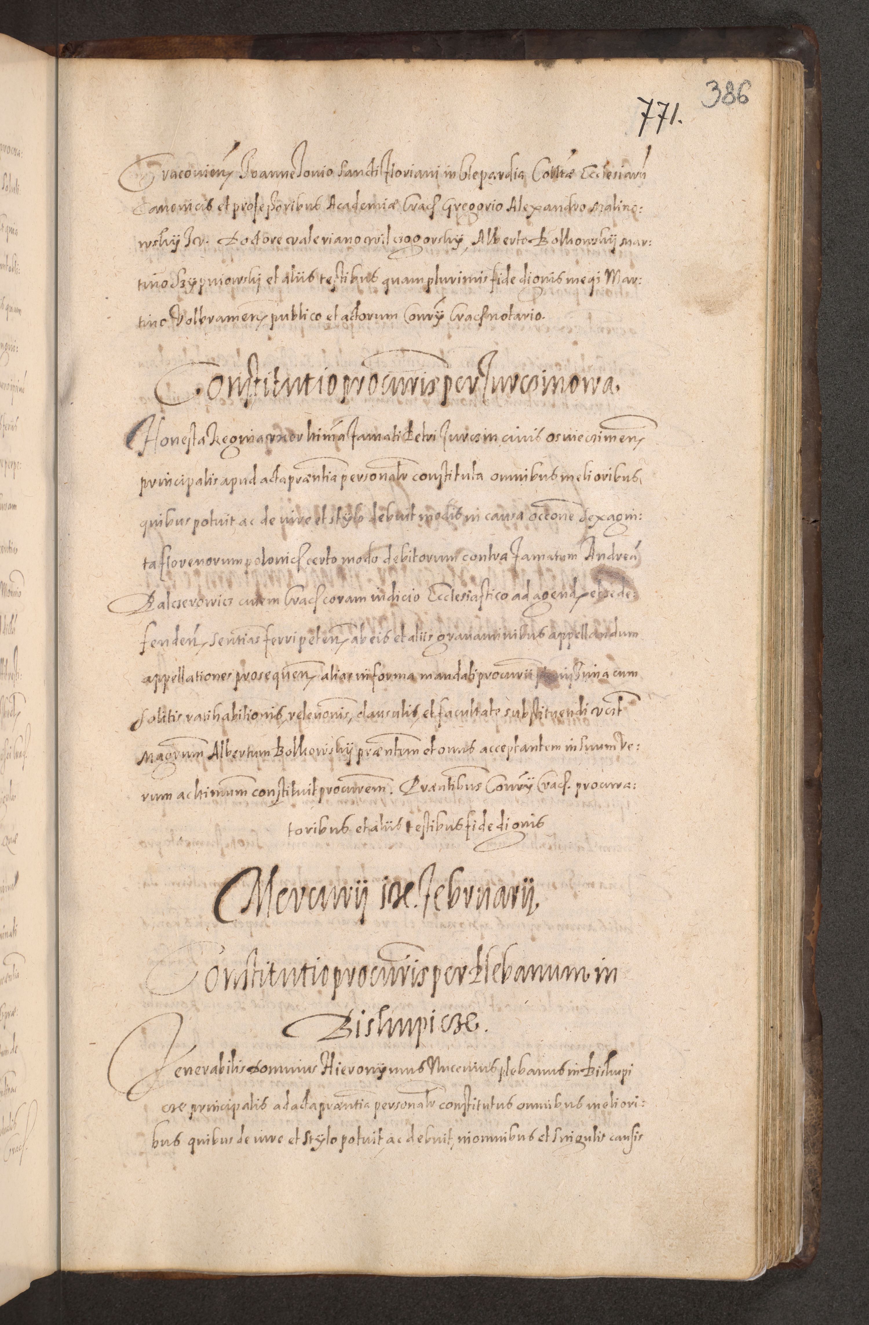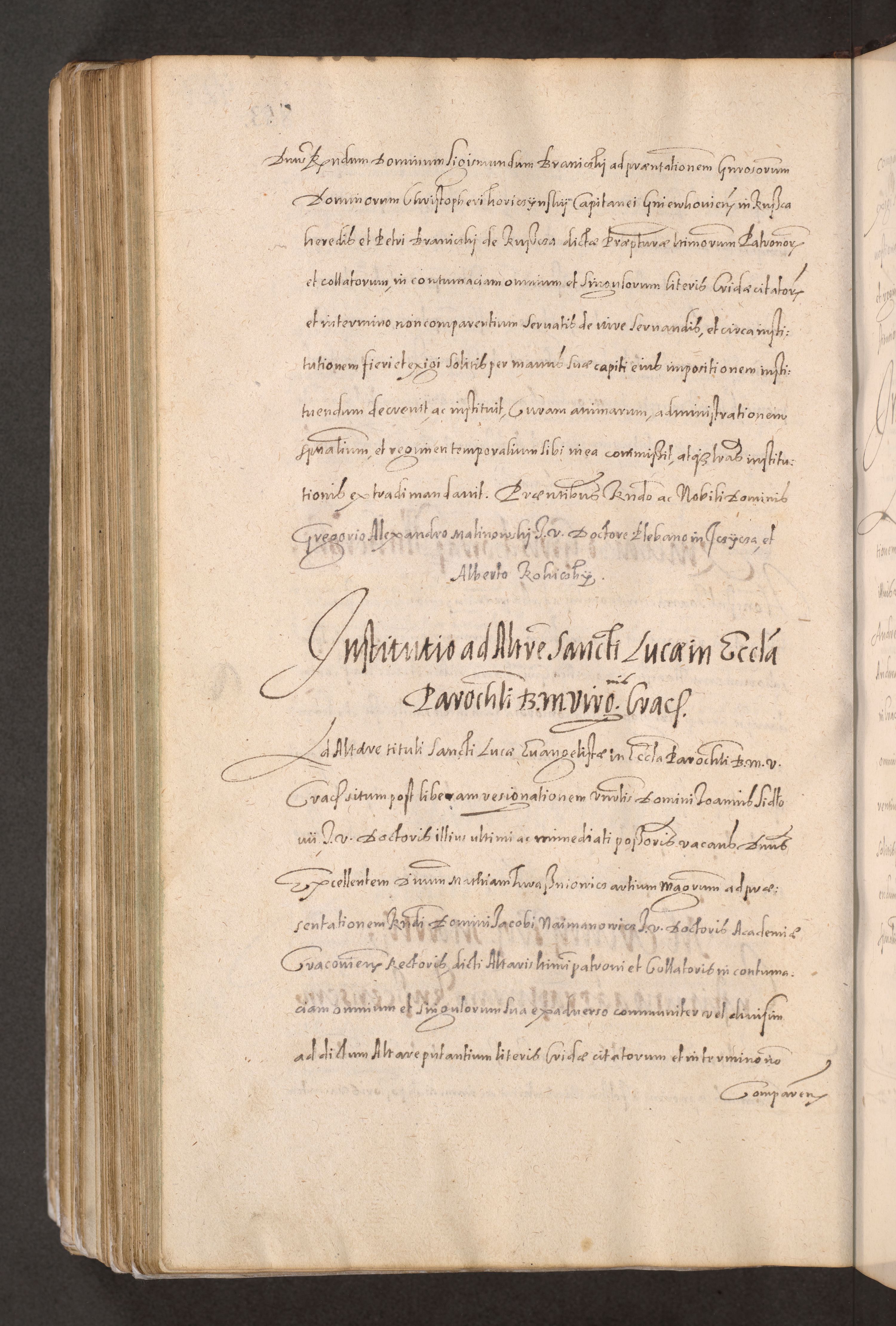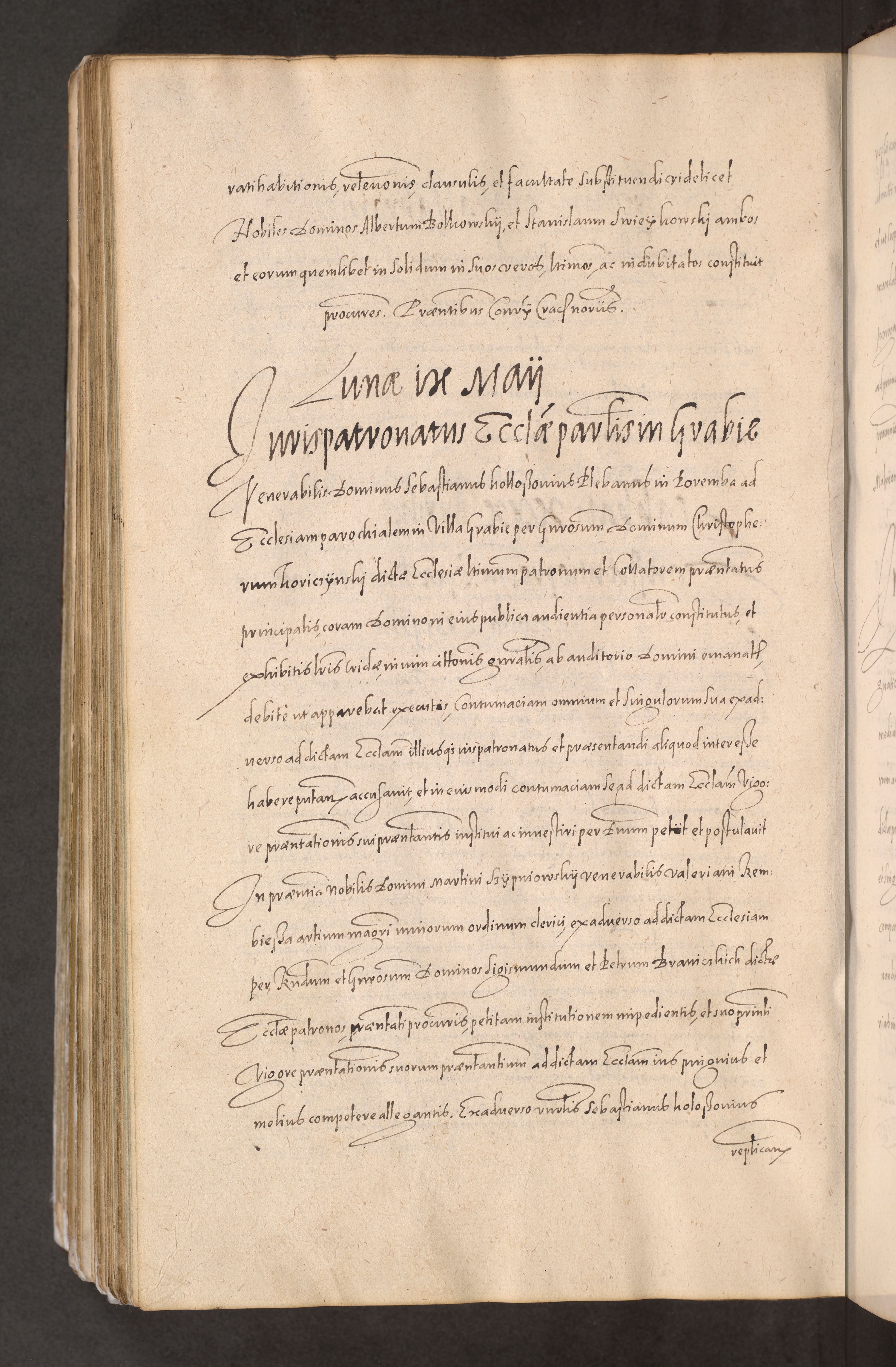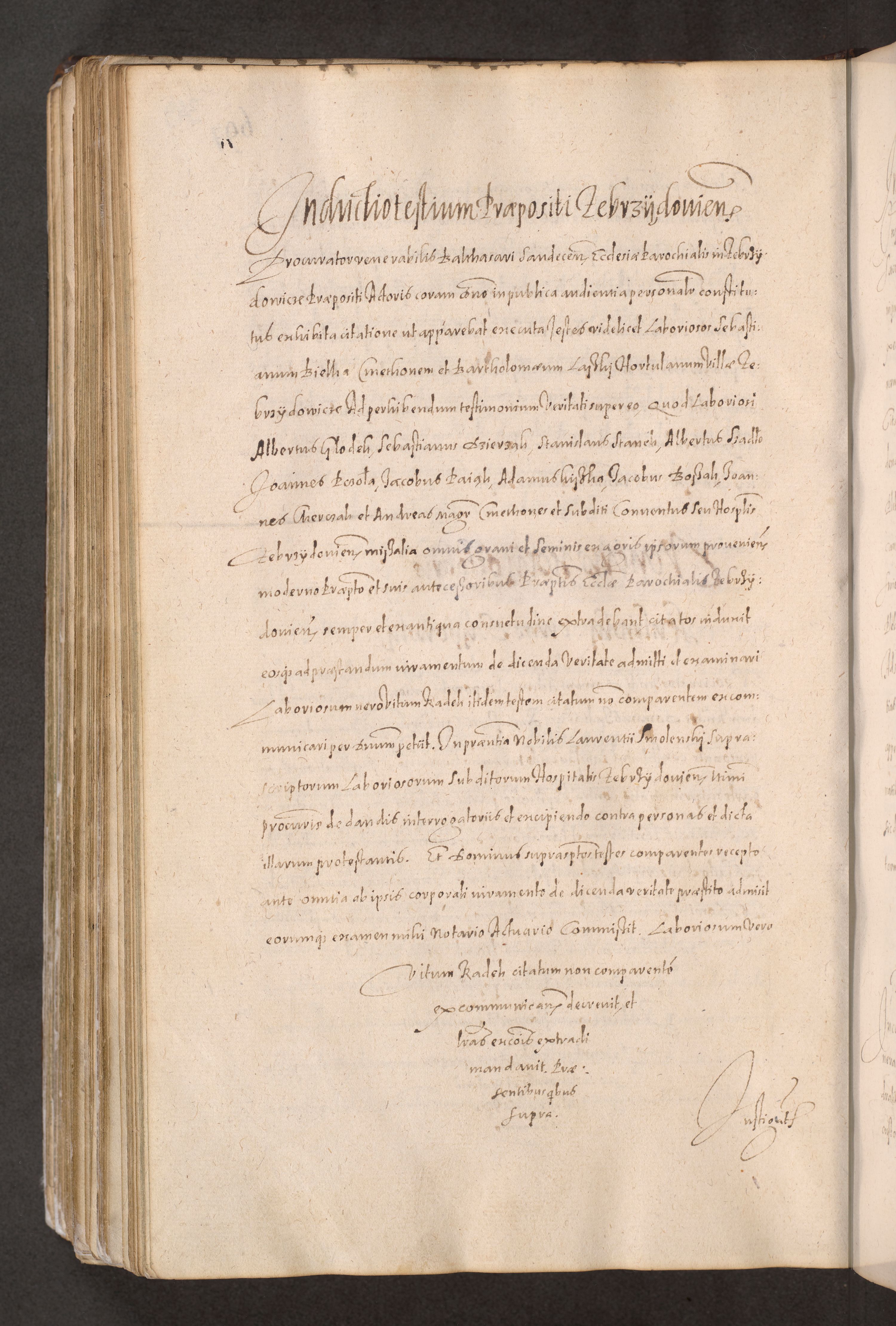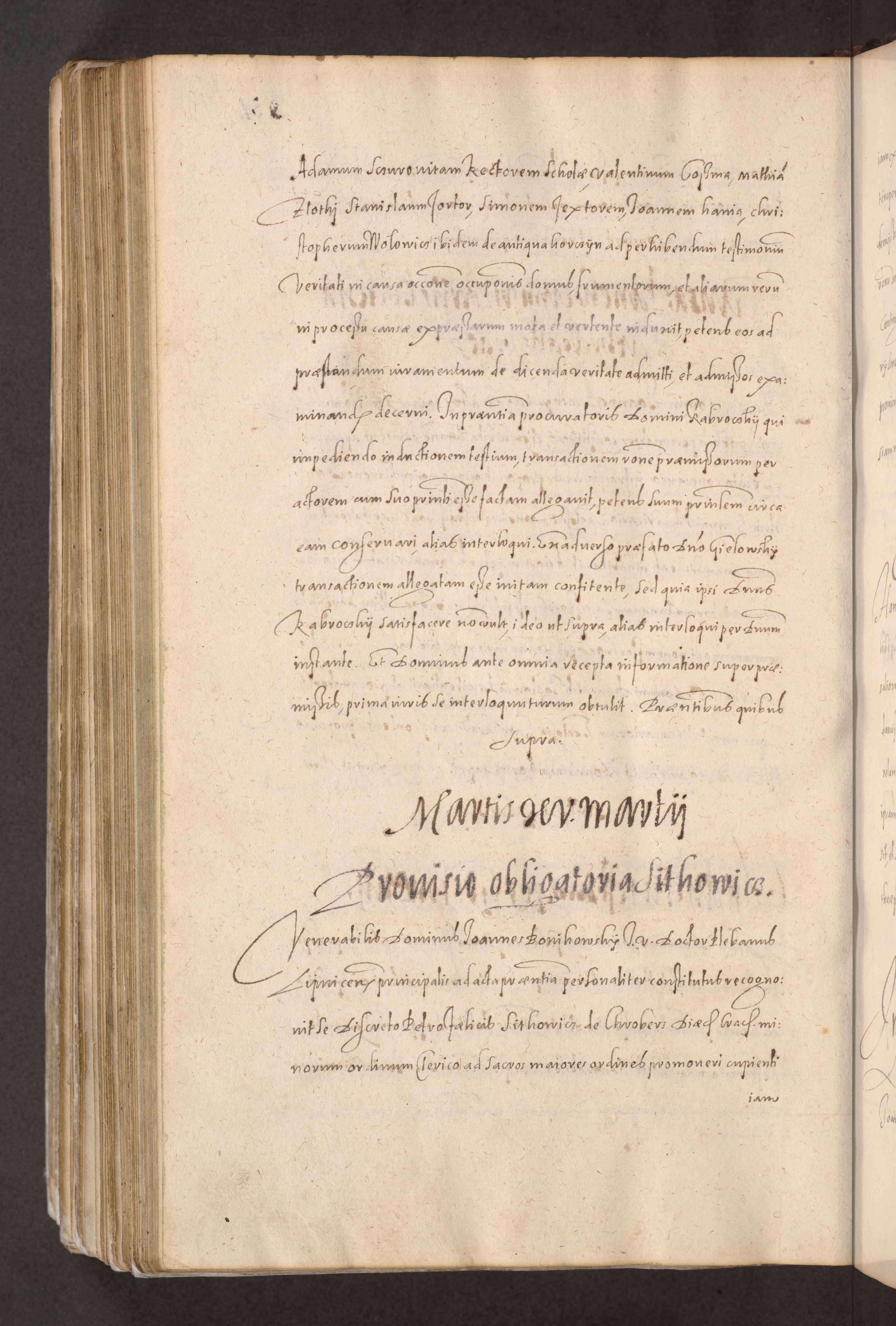 Acta actorum causarum obligationum institutionum decretorum constitutionum quietationum resignationum cissionum et atiaru obsernationum tam indiciariarum quam extra indiciariarum coram Admodum Reverendo Domino Joanne Zerzynski Canonico Vicario in Spiritualibus et Officiali generali Cracoviensis ad Annum Domini Millesimum Sextentissimum Vigesimum Indictione tertia Pontificatus SSmi D. N. D. Pauli Divina pronidentia Papae V. foeliciter moderni anno ipsins subfelici regimine Diocesis Cracoviensis Illustrissimi ac Reverendissimi D. N. D. Martini Szyszkowski Deigratia Episcopus Cracoviensis Ducis Severiensis in continuantur.