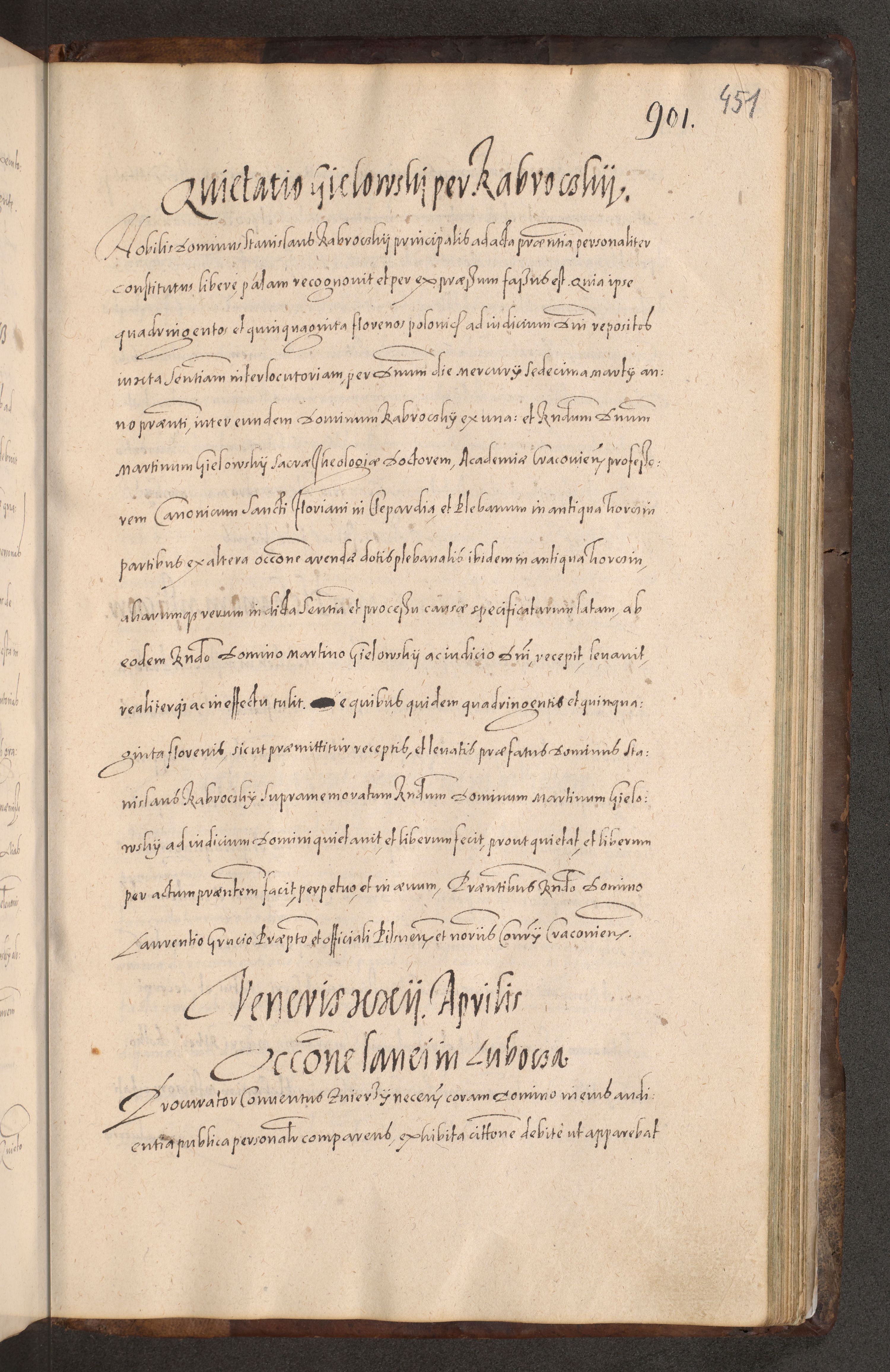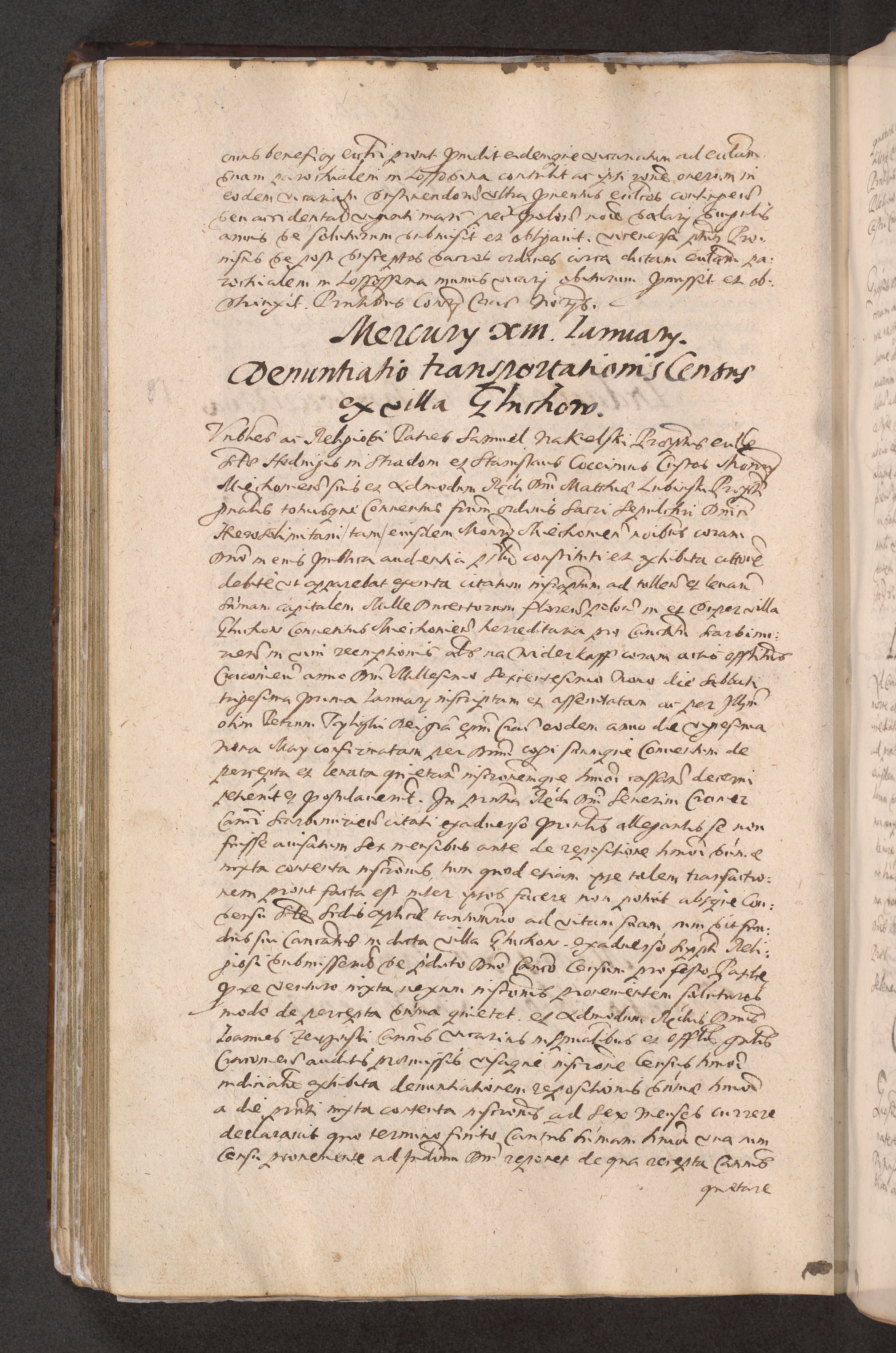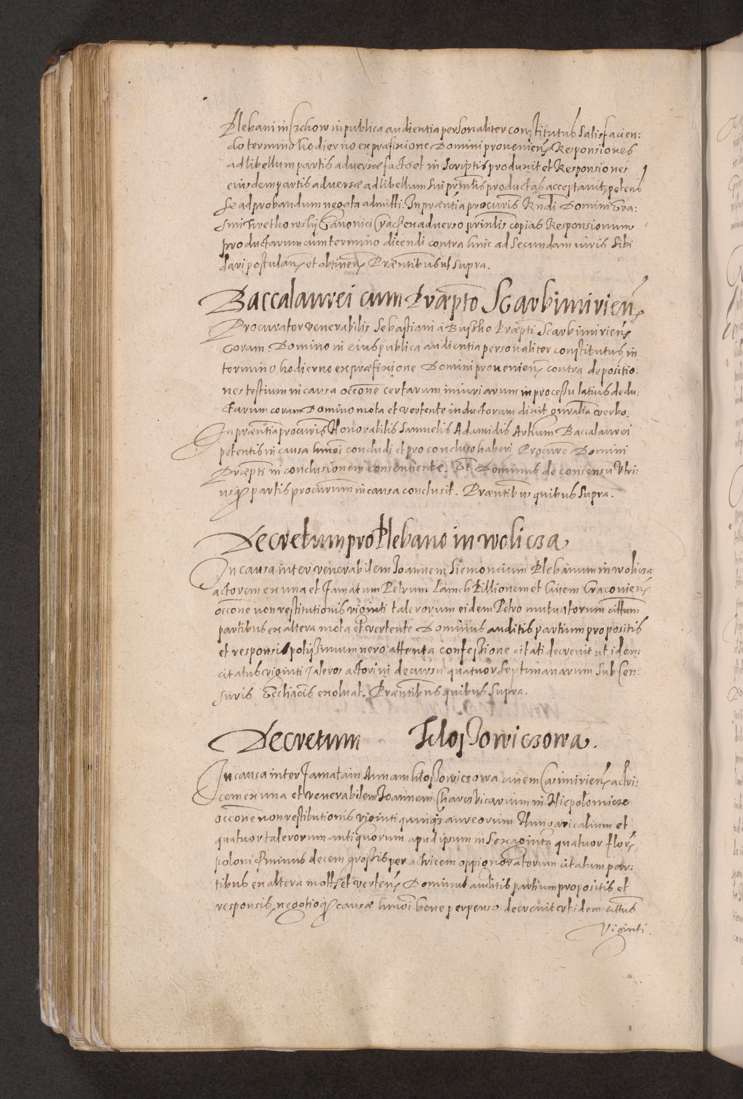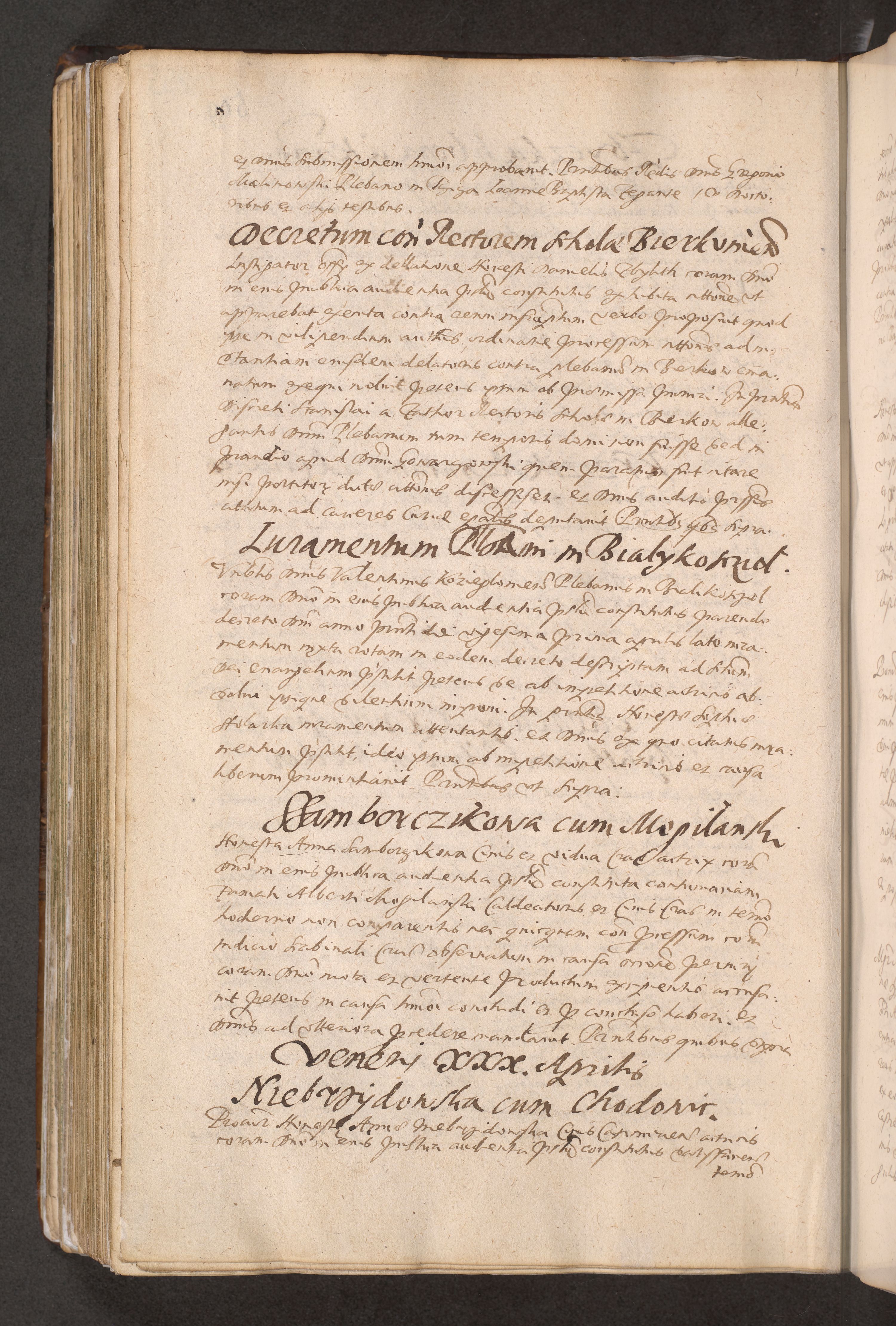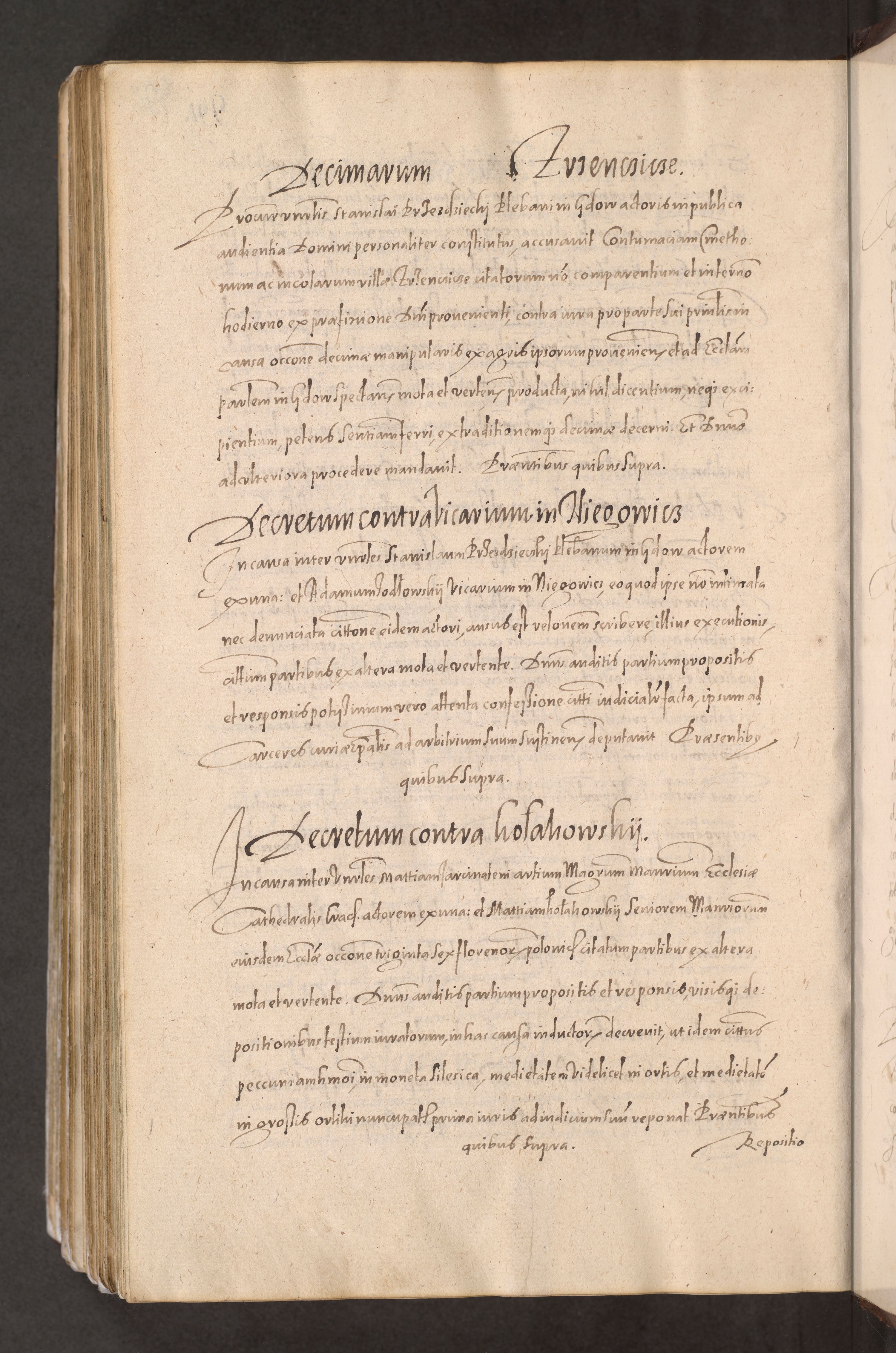 Acta actorum causarum obligationum institutionum decretorum constitutionum quietationum resignationum cissionum et atiaru obsernationum tam indiciariarum quam extra indiciariarum coram Admodum Reverendo Domino Joanne Zerzynski Canonico Vicario in Spiritualibus et Officiali generali Cracoviensis ad Annum Domini Millesimum Sextentissimum Vigesimum Indictione tertia Pontificatus SSmi D. N. D. Pauli Divina pronidentia Papae V. foeliciter moderni anno ipsins subfelici regimine Diocesis Cracoviensis Illustrissimi ac Reverendissimi D. N. D. Martini Szyszkowski Deigratia Episcopus Cracoviensis Ducis Severiensis in continuantur.