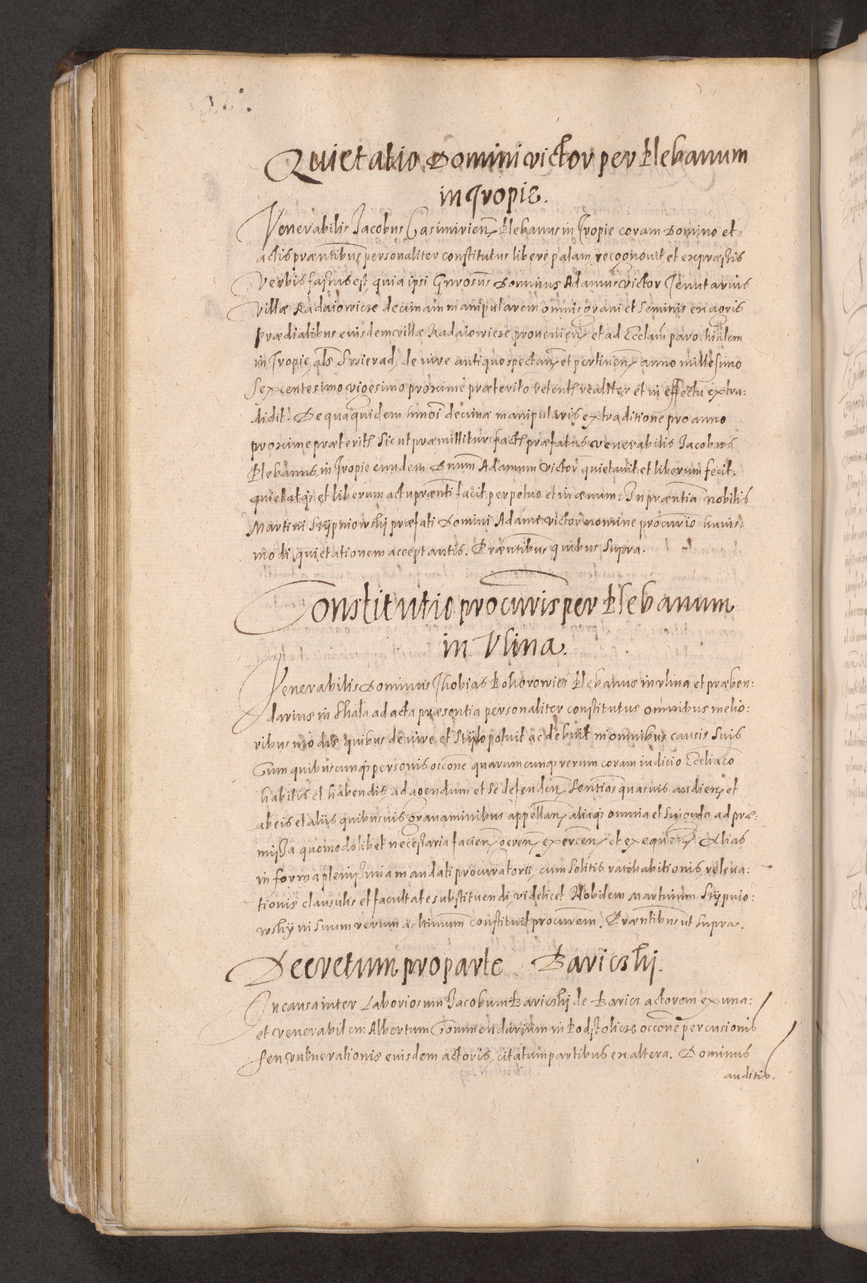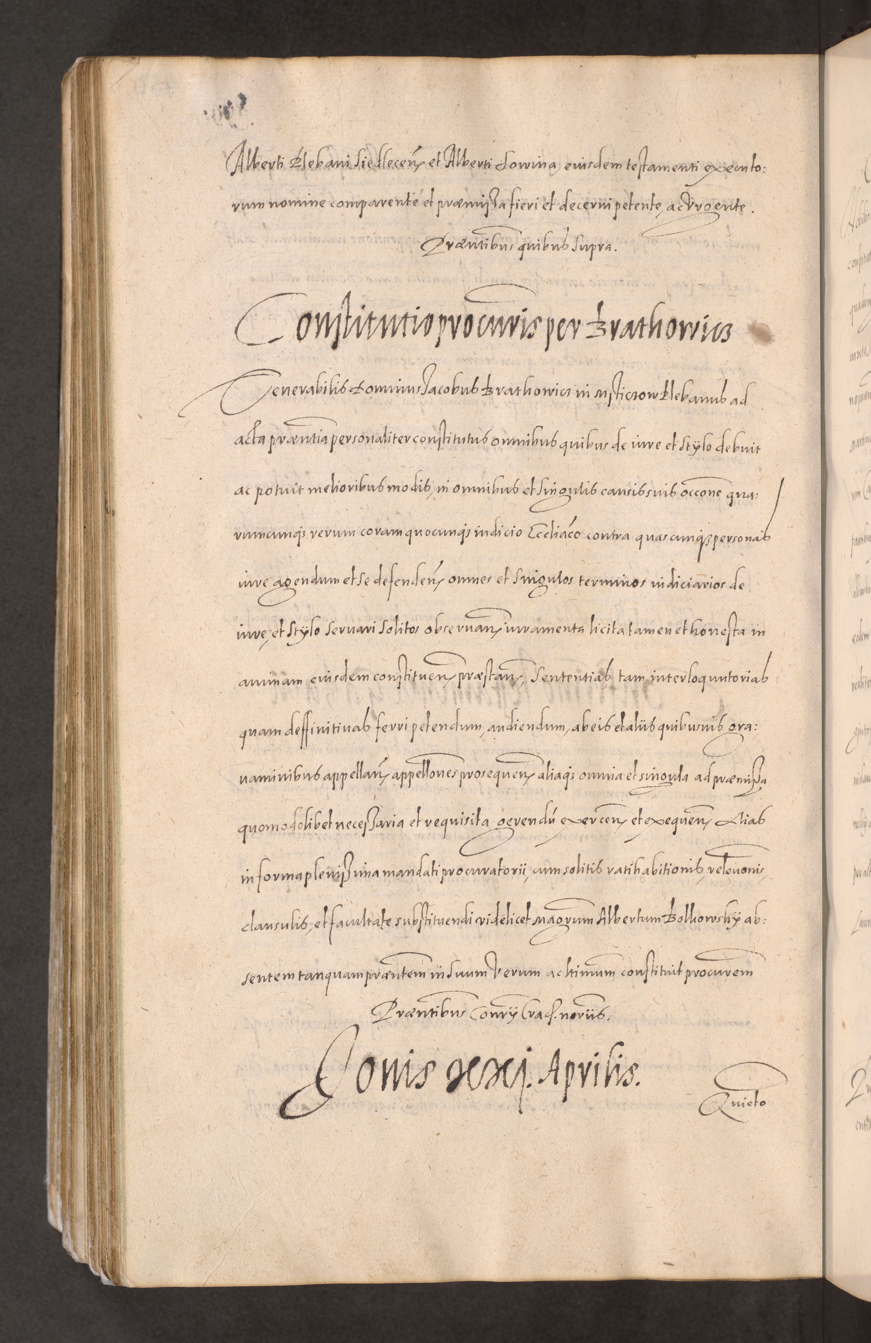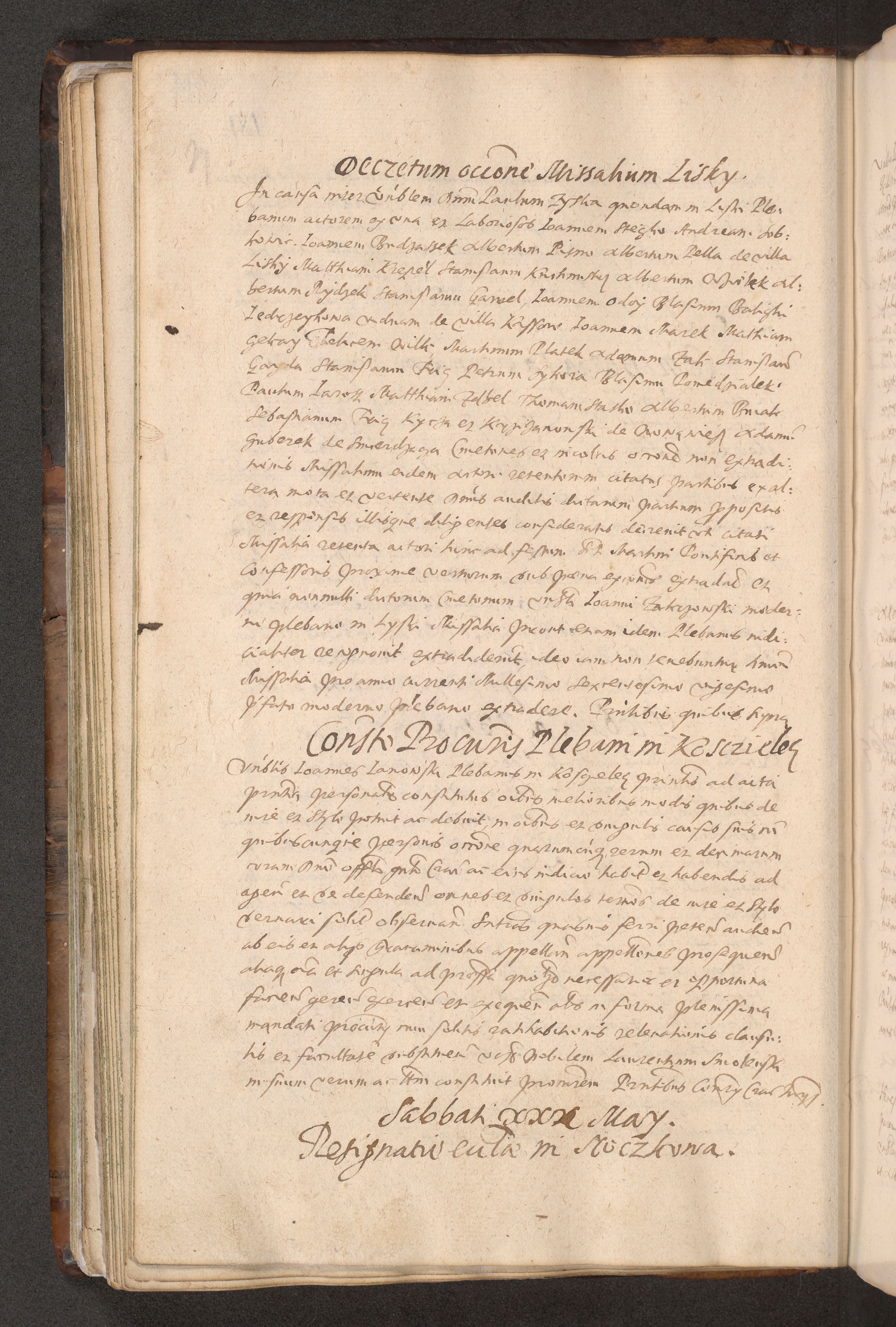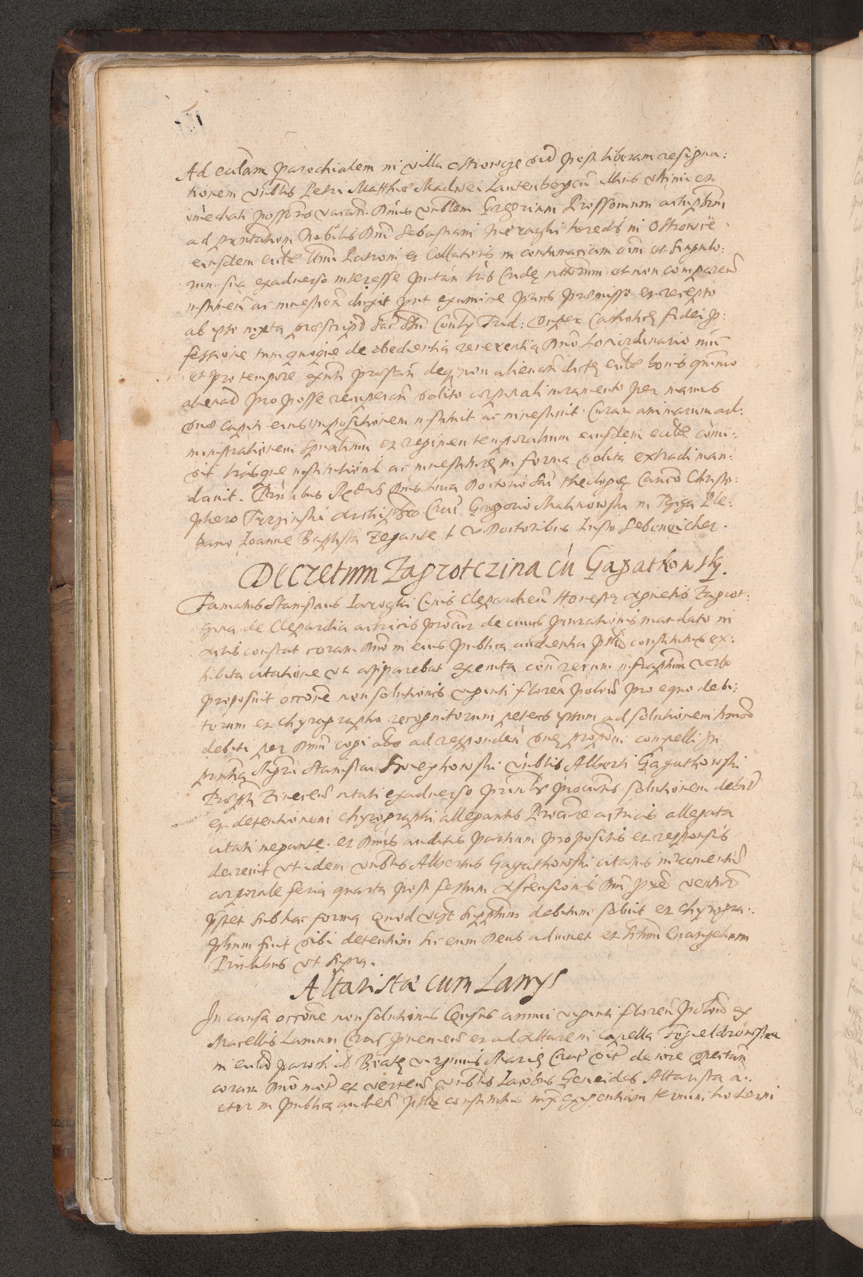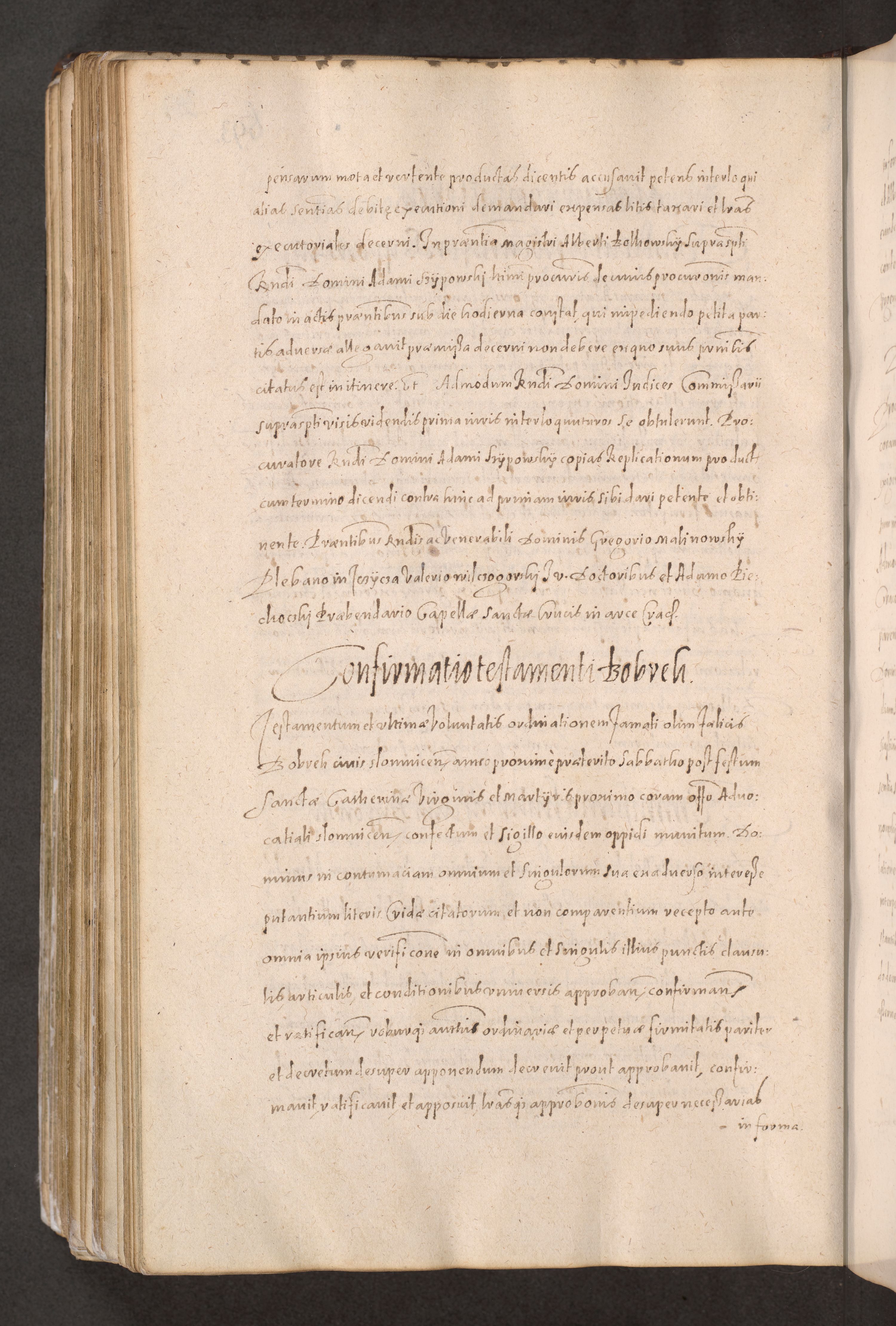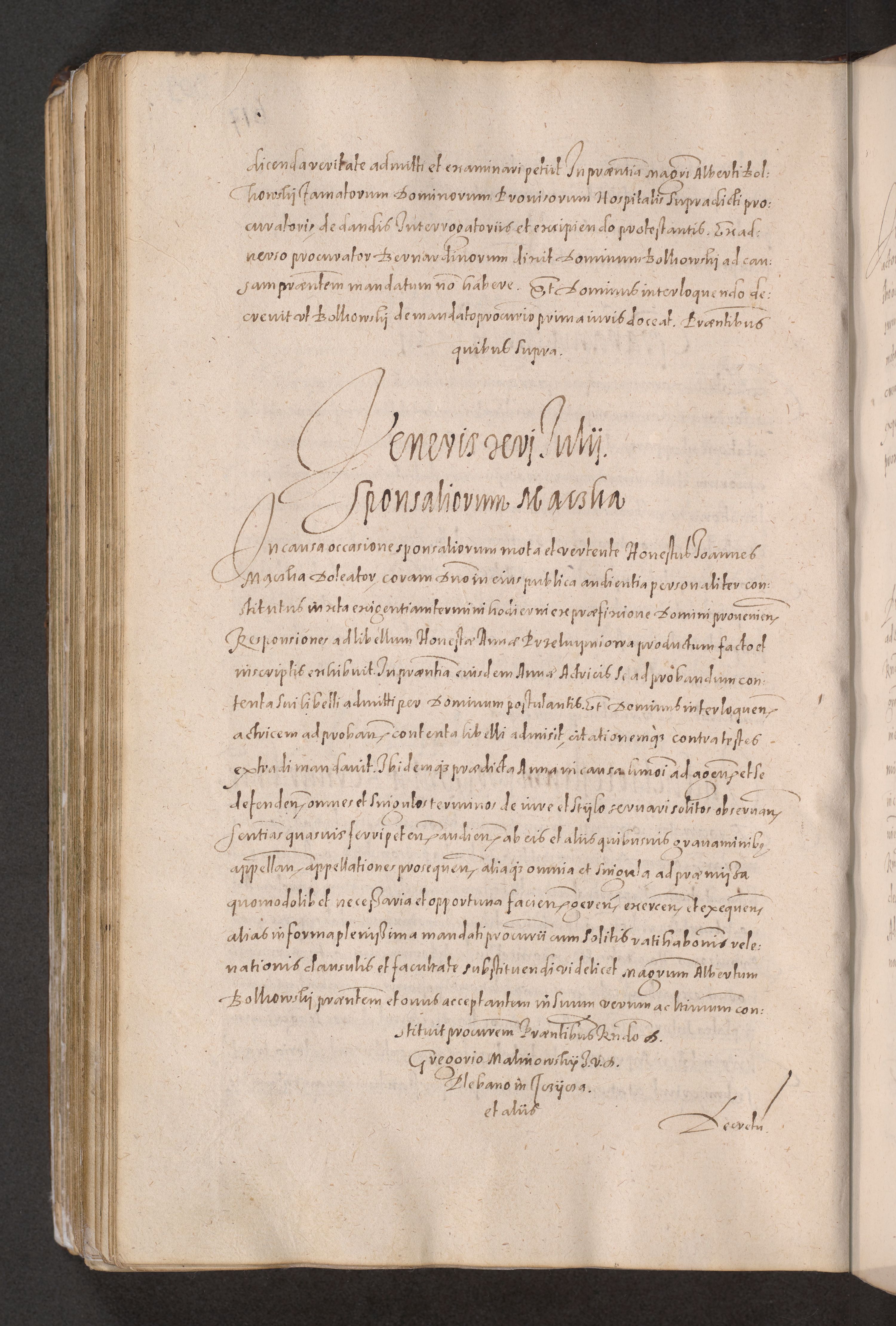 Acta actorum causarum obligationum institutionum decretorum constitutionum quietationum resignationum cissionum et atiaru obsernationum tam indiciariarum quam extra indiciariarum coram Admodum Reverendo Domino Joanne Zerzynski Canonico Vicario in Spiritualibus et Officiali generali Cracoviensis ad Annum Domini Millesimum Sextentissimum Vigesimum Indictione tertia Pontificatus SSmi D. N. D. Pauli Divina pronidentia Papae V. foeliciter moderni anno ipsins subfelici regimine Diocesis Cracoviensis Illustrissimi ac Reverendissimi D. N. D. Martini Szyszkowski Deigratia Episcopus Cracoviensis Ducis Severiensis in continuantur.