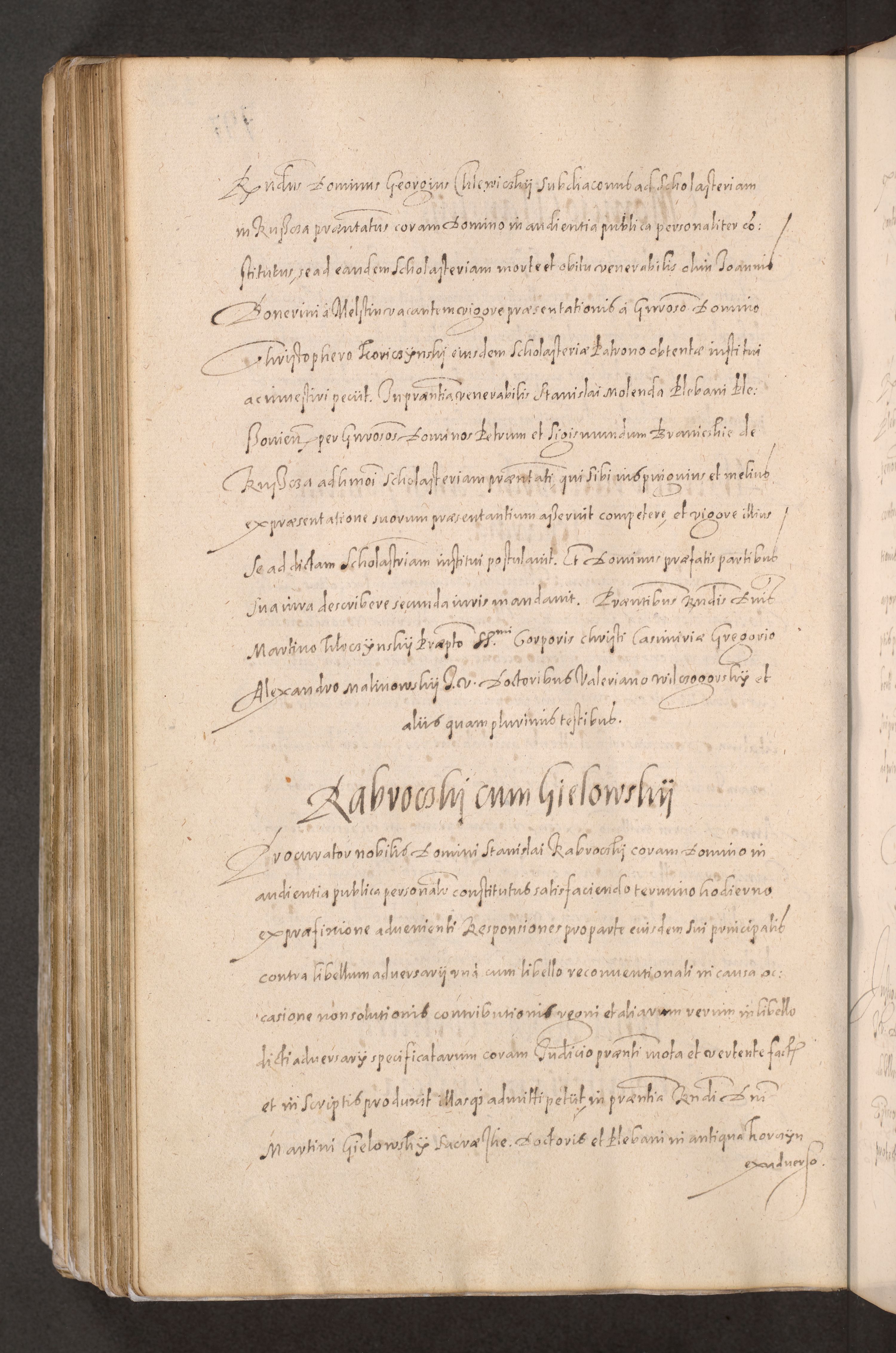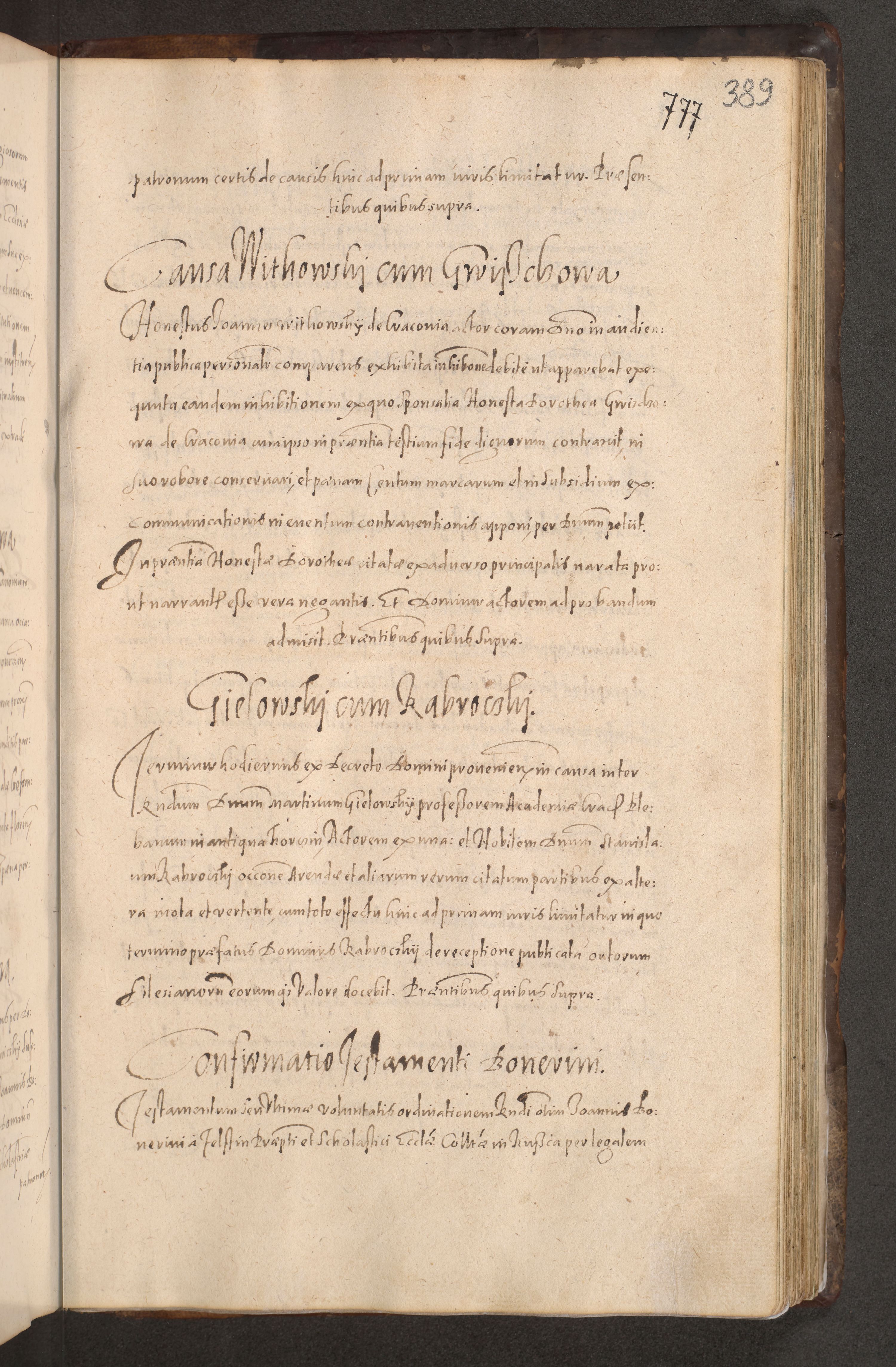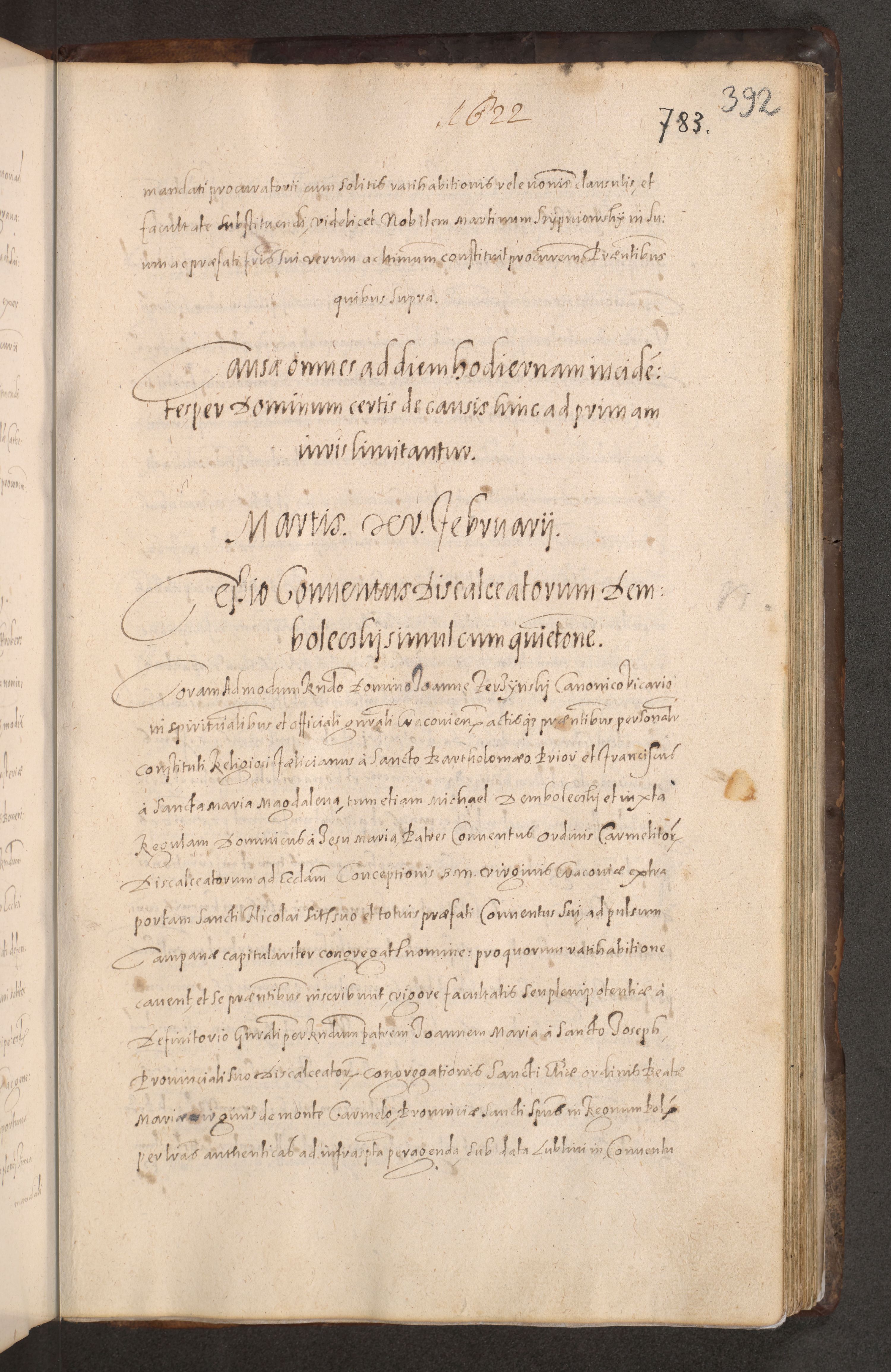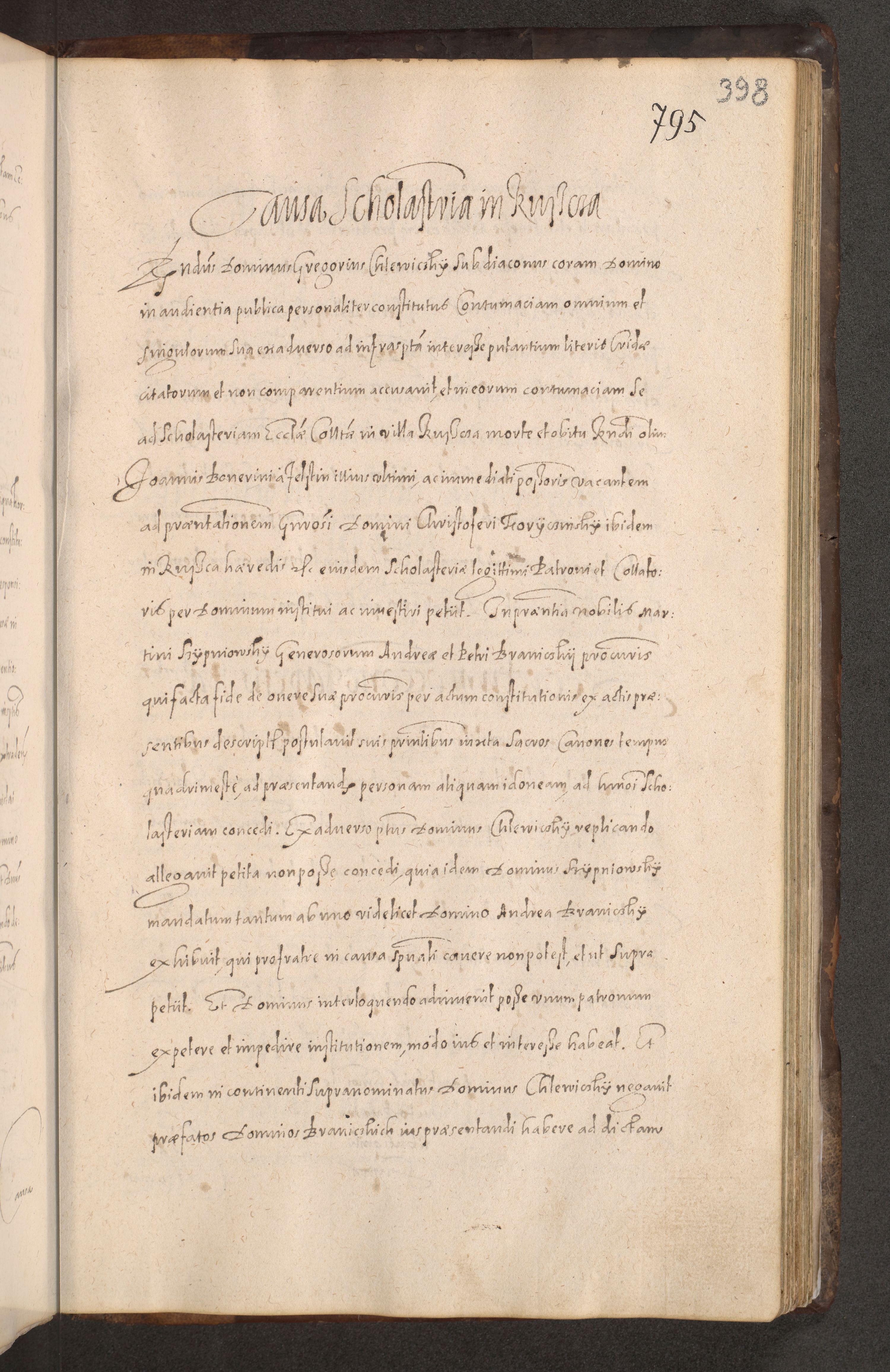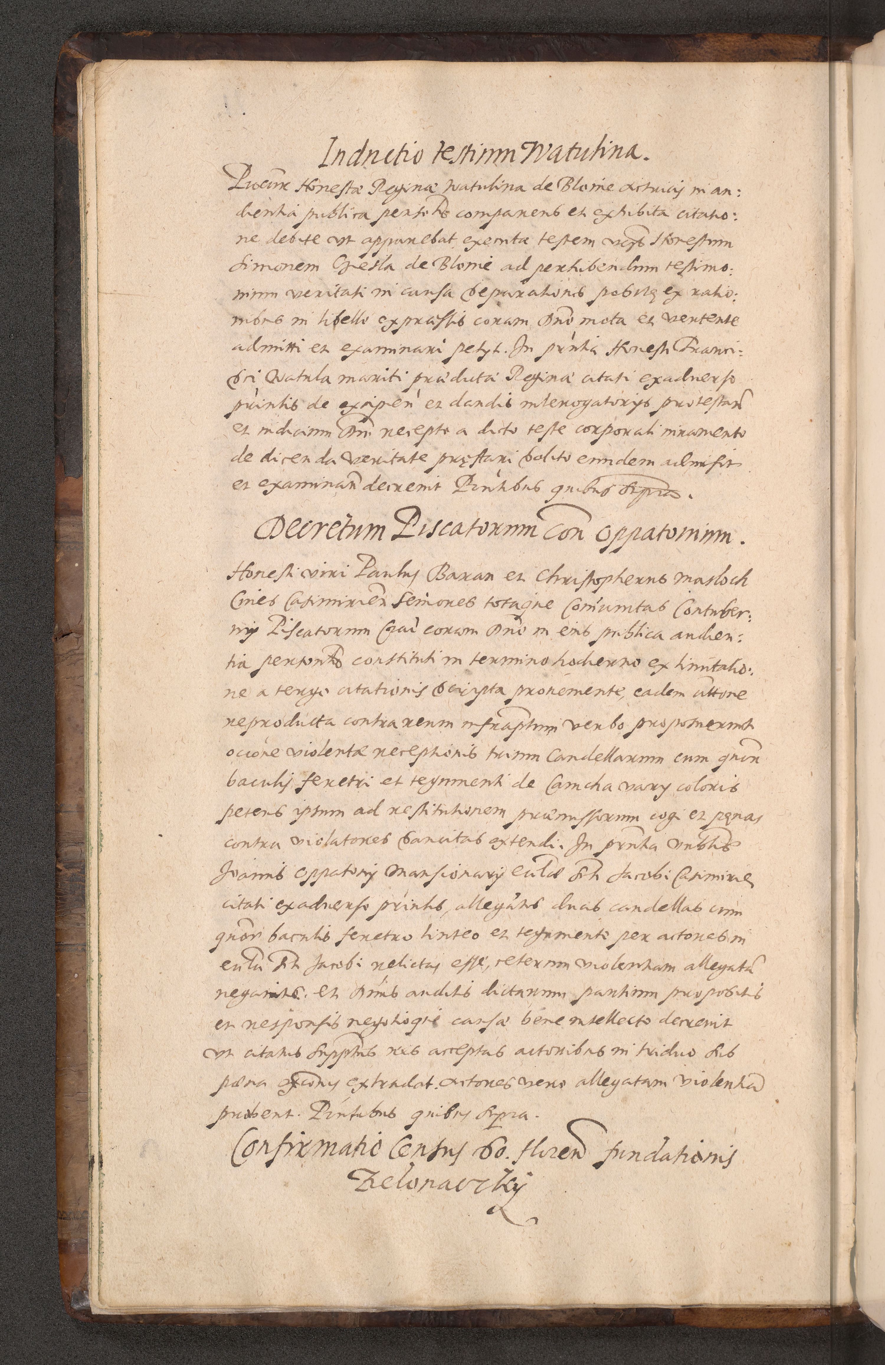 Acta actorum causarum obligationum institutionum decretorum constitutionum quietationum resignationum cissionum et atiaru obsernationum tam indiciariarum quam extra indiciariarum coram Admodum Reverendo Domino Joanne Zerzynski Canonico Vicario in Spiritualibus et Officiali generali Cracoviensis ad Annum Domini Millesimum Sextentissimum Vigesimum Indictione tertia Pontificatus SSmi D. N. D. Pauli Divina pronidentia Papae V. foeliciter moderni anno ipsins subfelici regimine Diocesis Cracoviensis Illustrissimi ac Reverendissimi D. N. D. Martini Szyszkowski Deigratia Episcopus Cracoviensis Ducis Severiensis in continuantur.