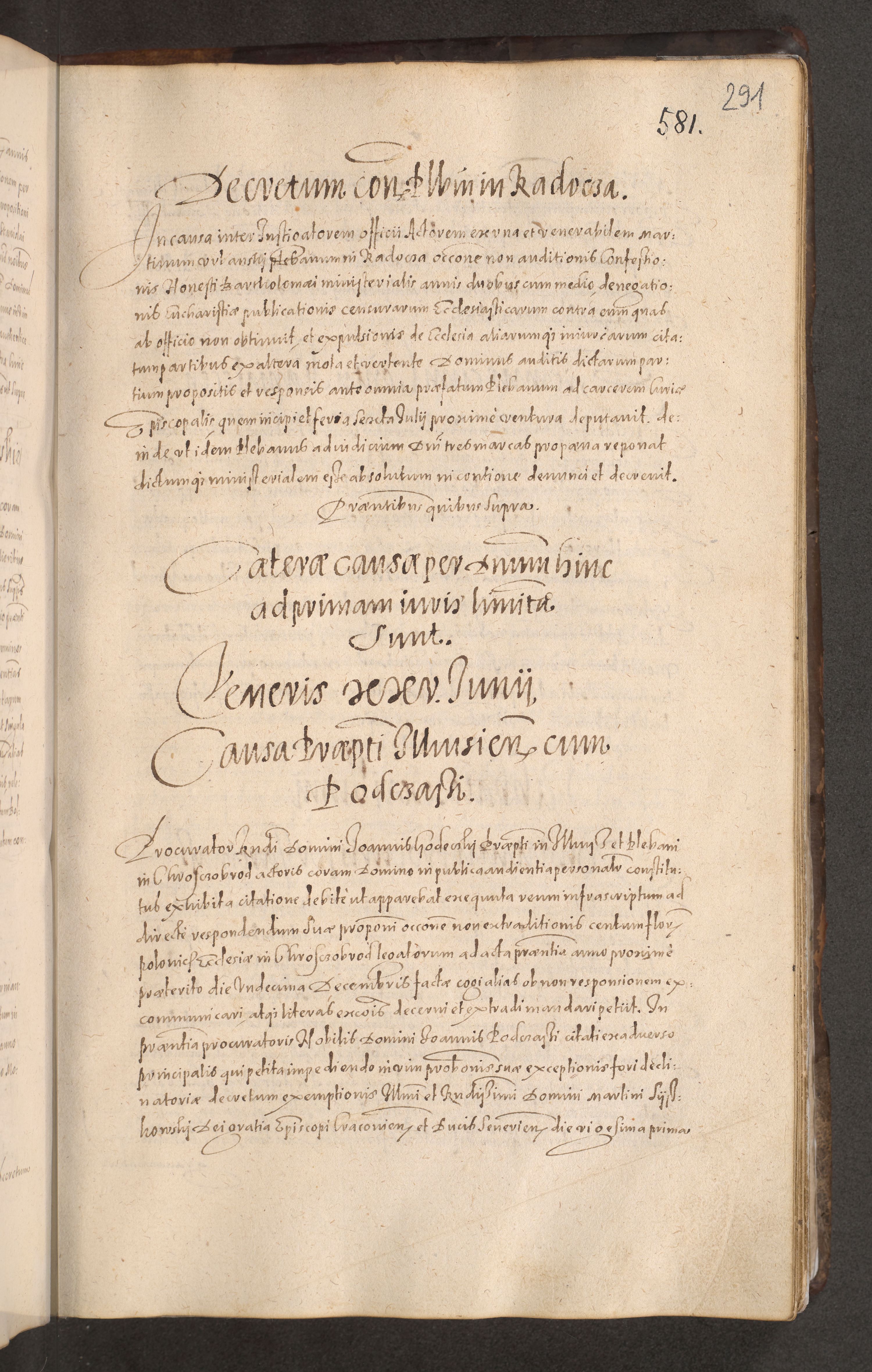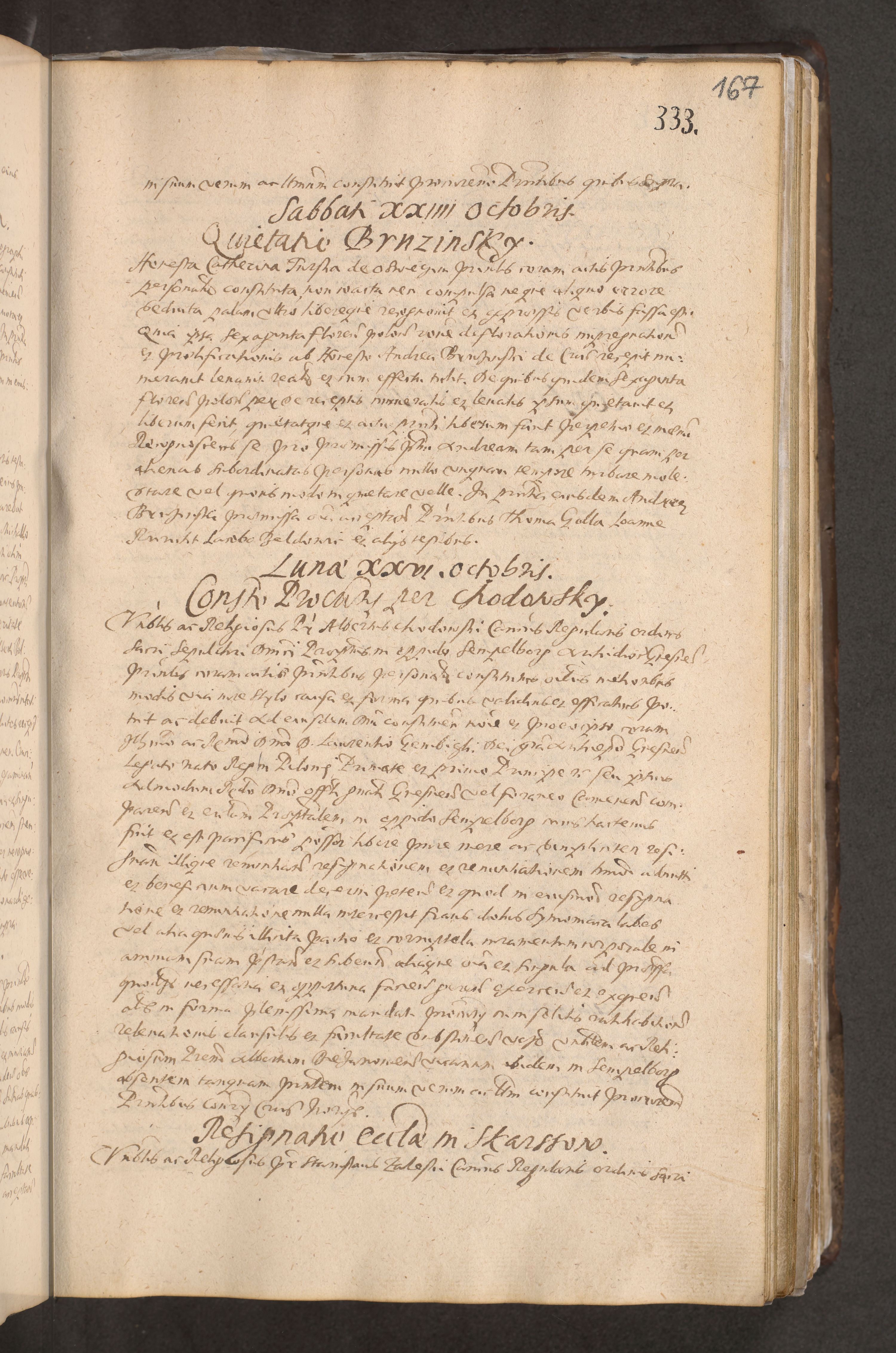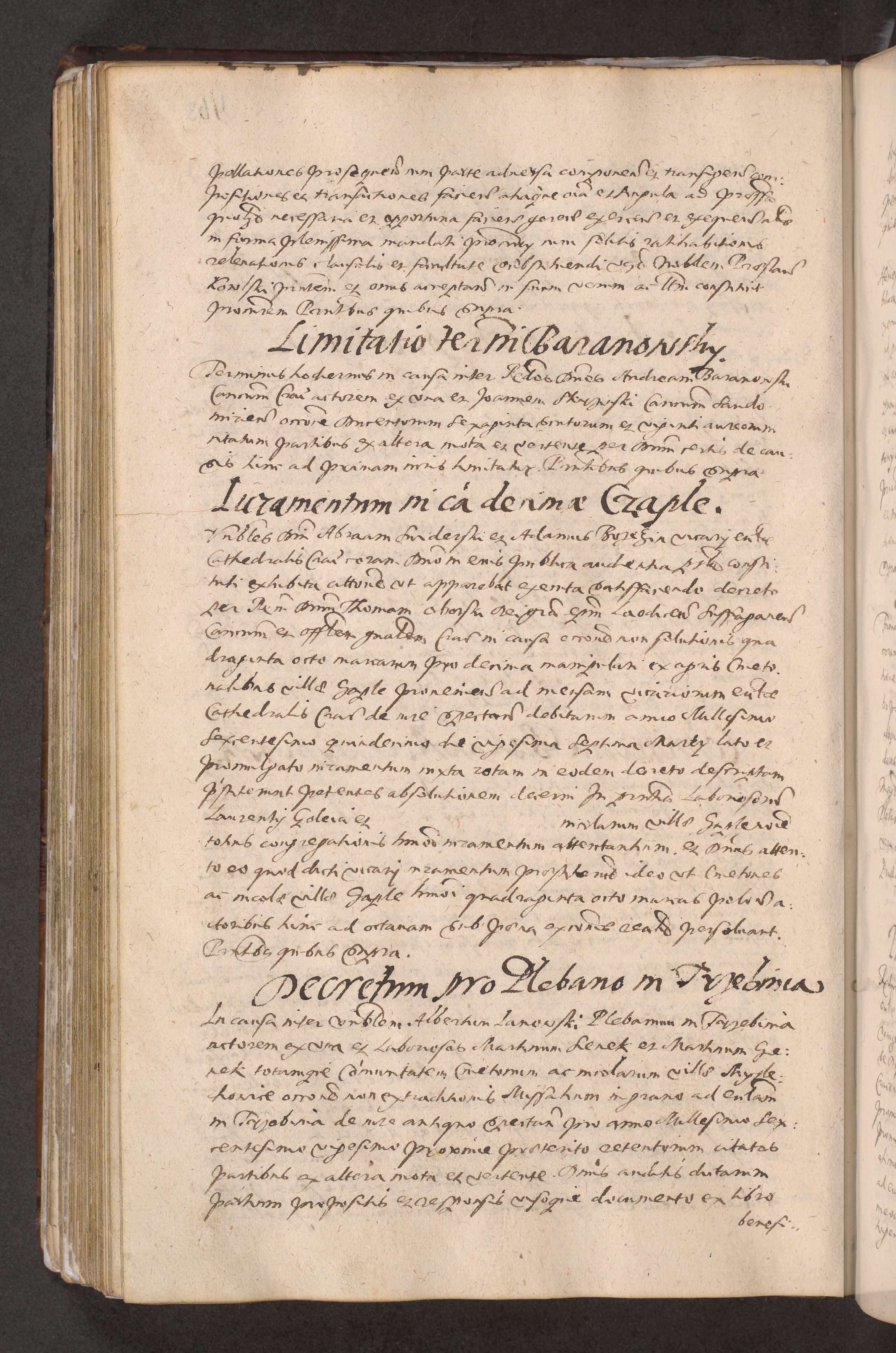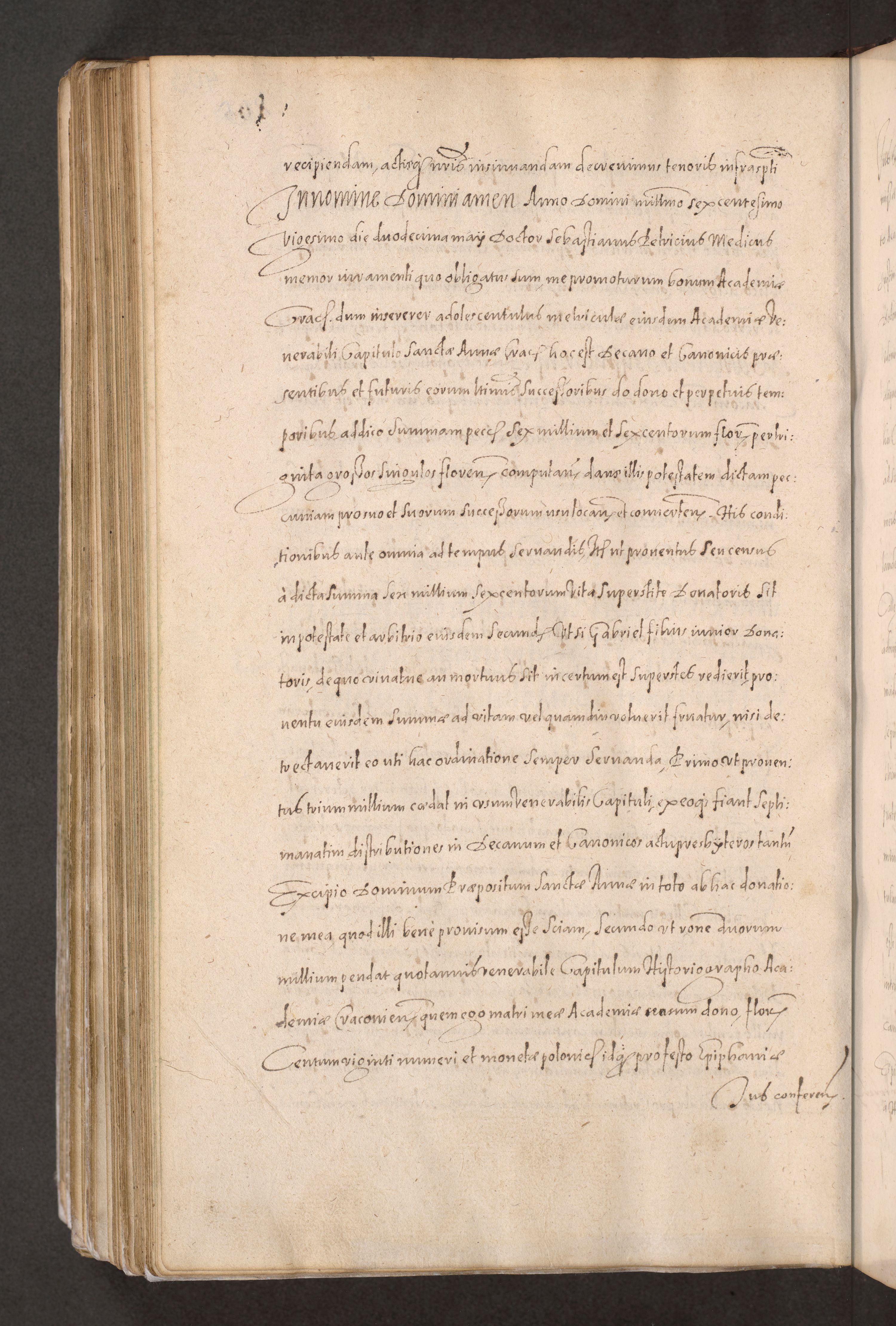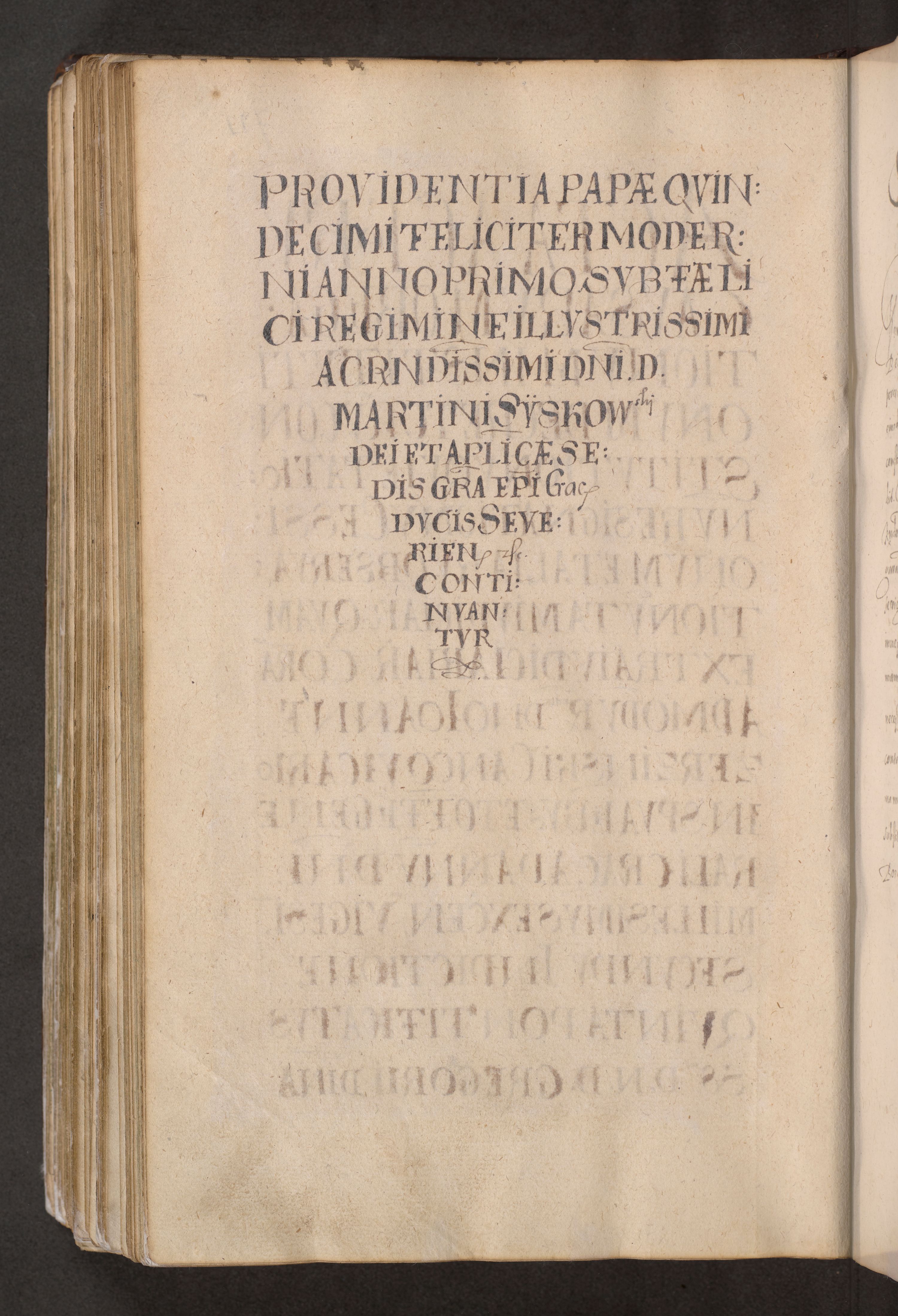 Acta actorum causarum obligationum institutionum decretorum constitutionum quietationum resignationum cissionum et atiaru obsernationum tam indiciariarum quam extra indiciariarum coram Admodum Reverendo Domino Joanne Zerzynski Canonico Vicario in Spiritualibus et Officiali generali Cracoviensis ad Annum Domini Millesimum Sextentissimum Vigesimum Indictione tertia Pontificatus SSmi D. N. D. Pauli Divina pronidentia Papae V. foeliciter moderni anno ipsins subfelici regimine Diocesis Cracoviensis Illustrissimi ac Reverendissimi D. N. D. Martini Szyszkowski Deigratia Episcopus Cracoviensis Ducis Severiensis in continuantur.