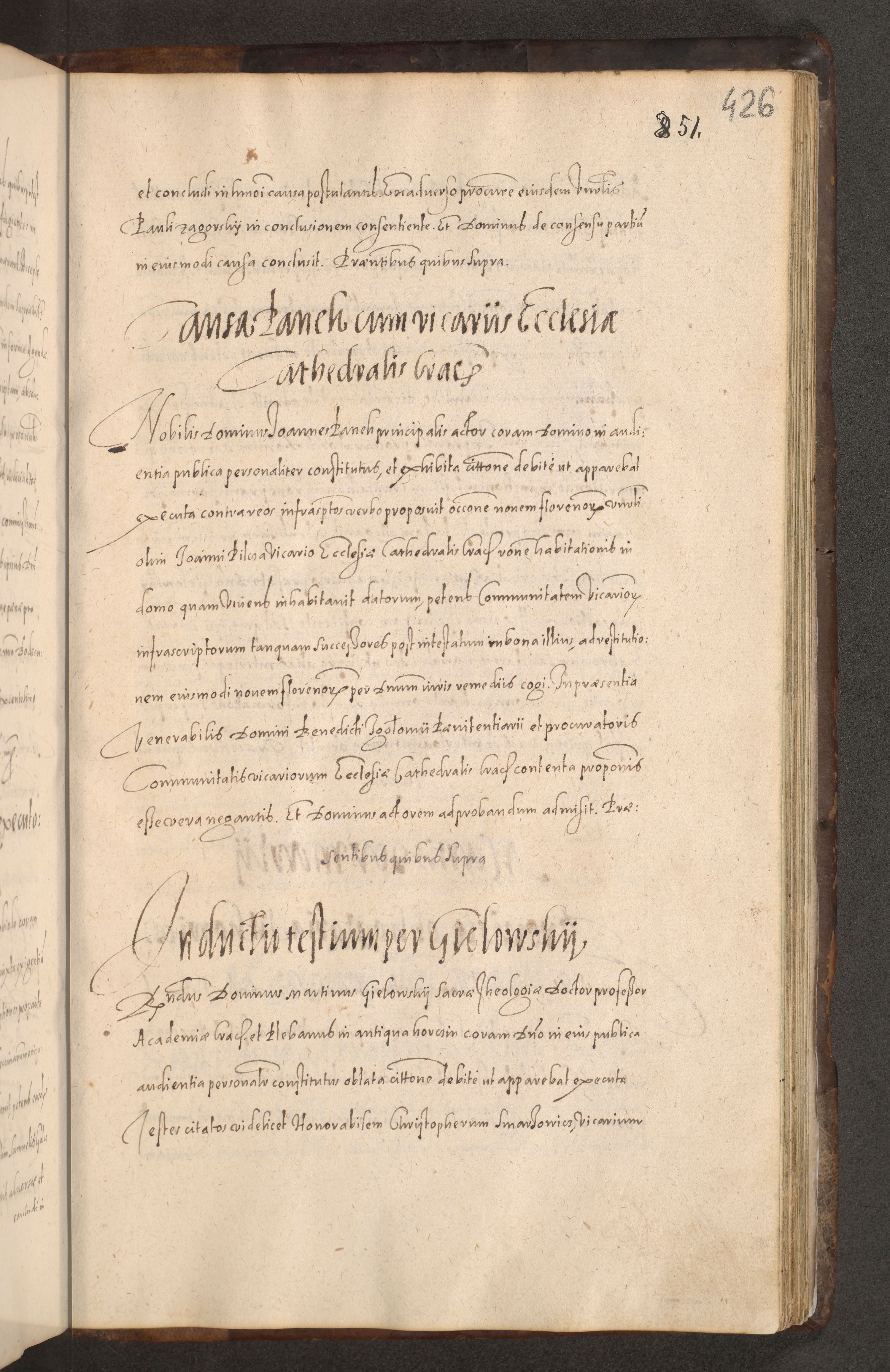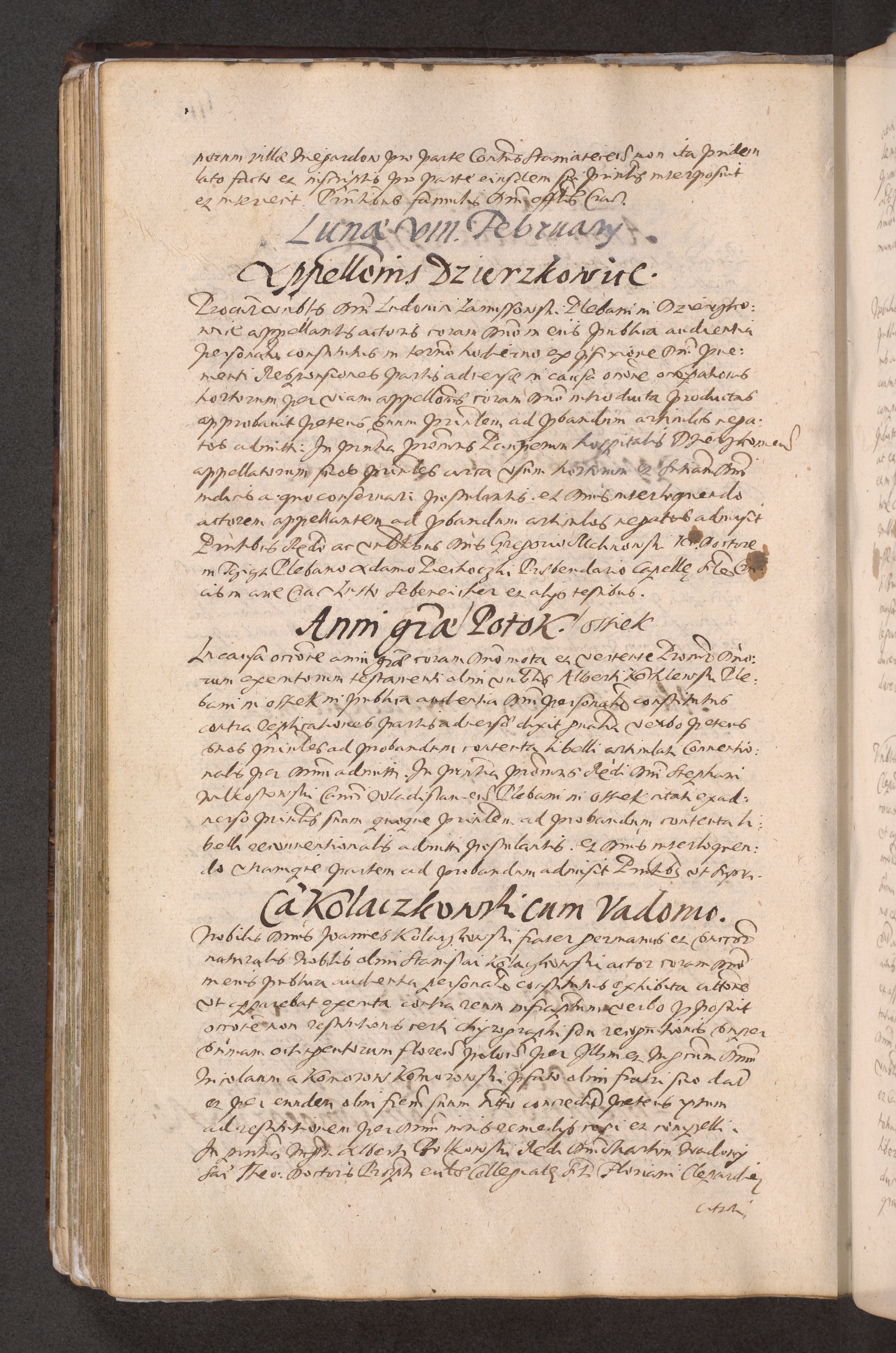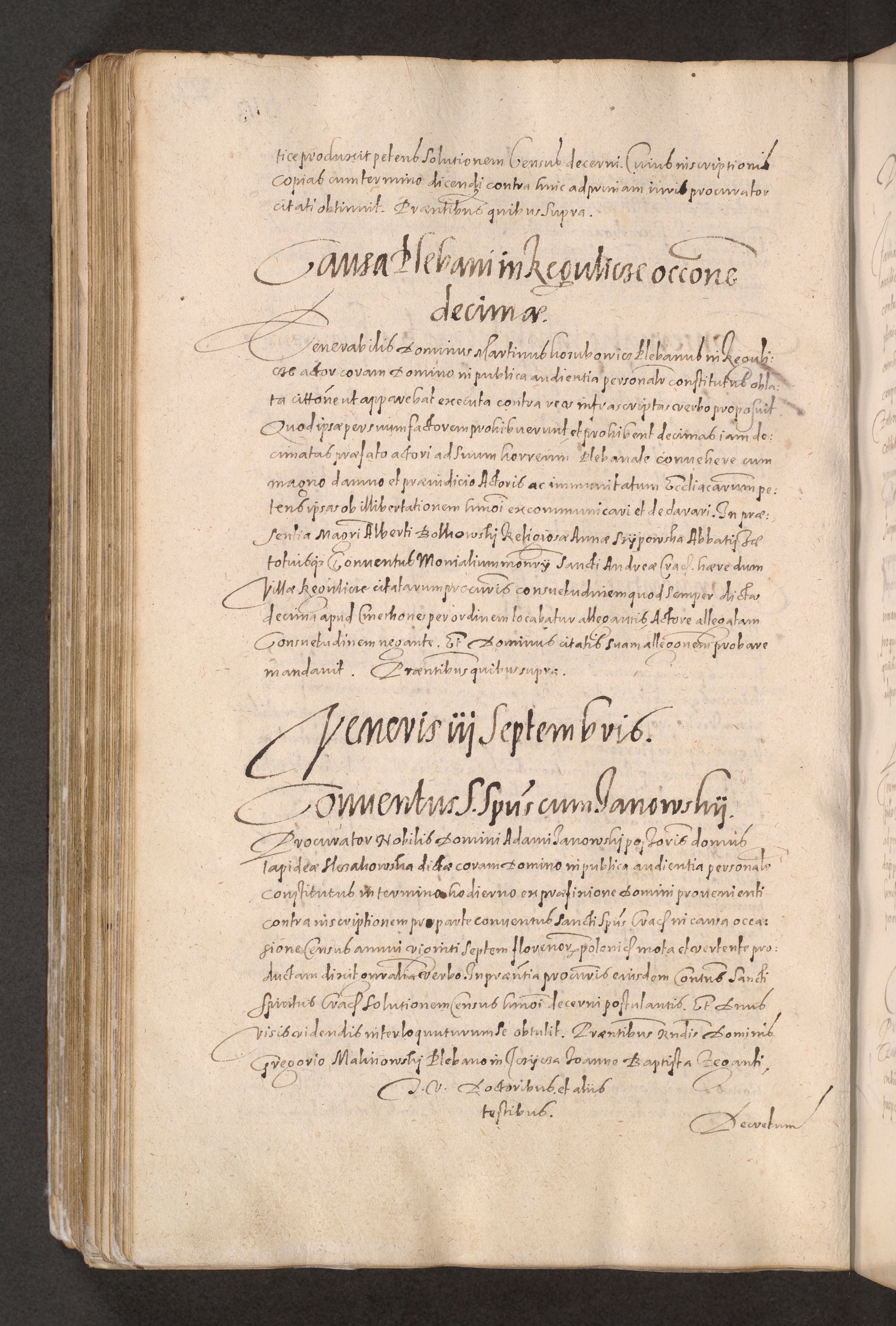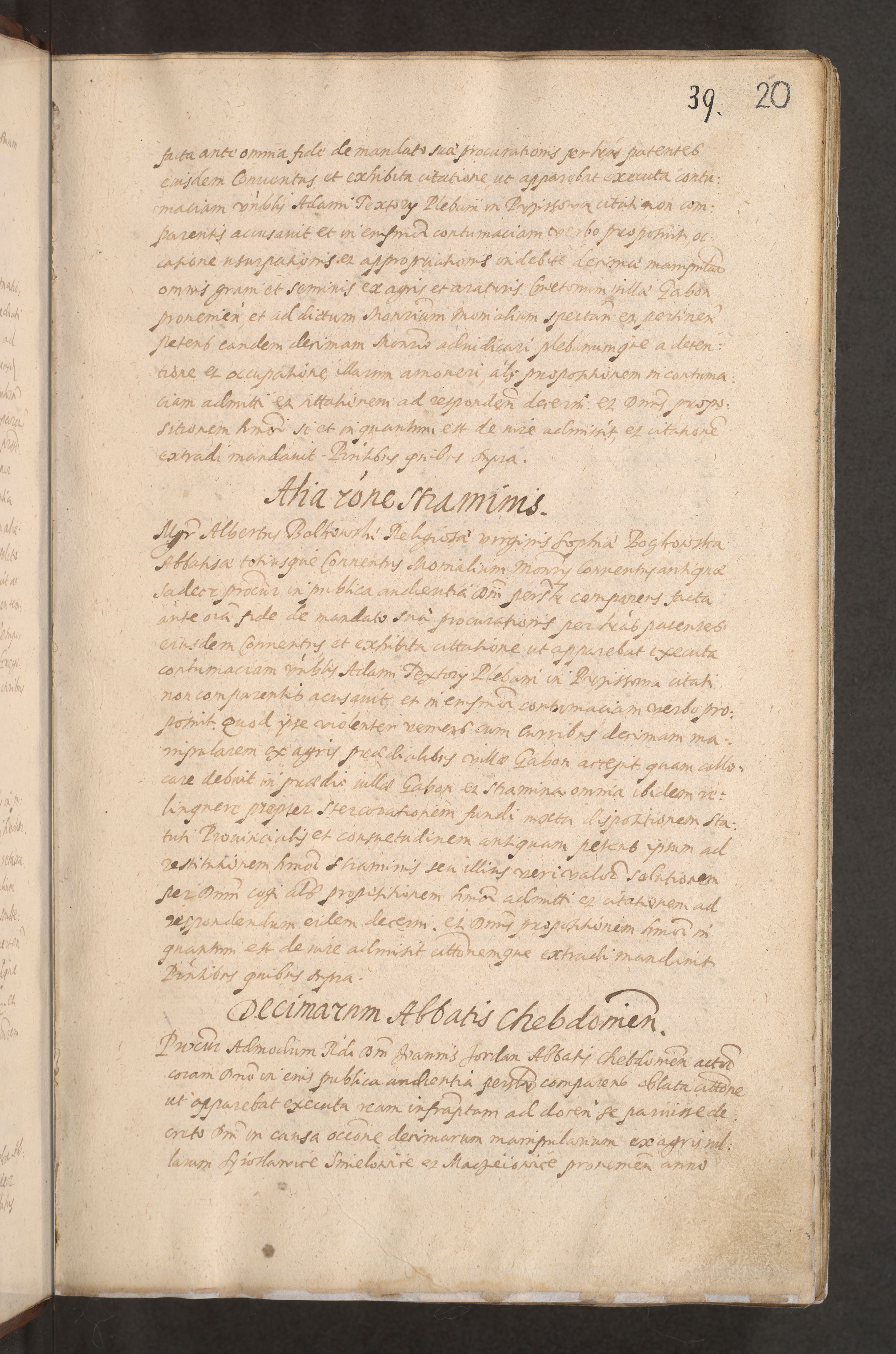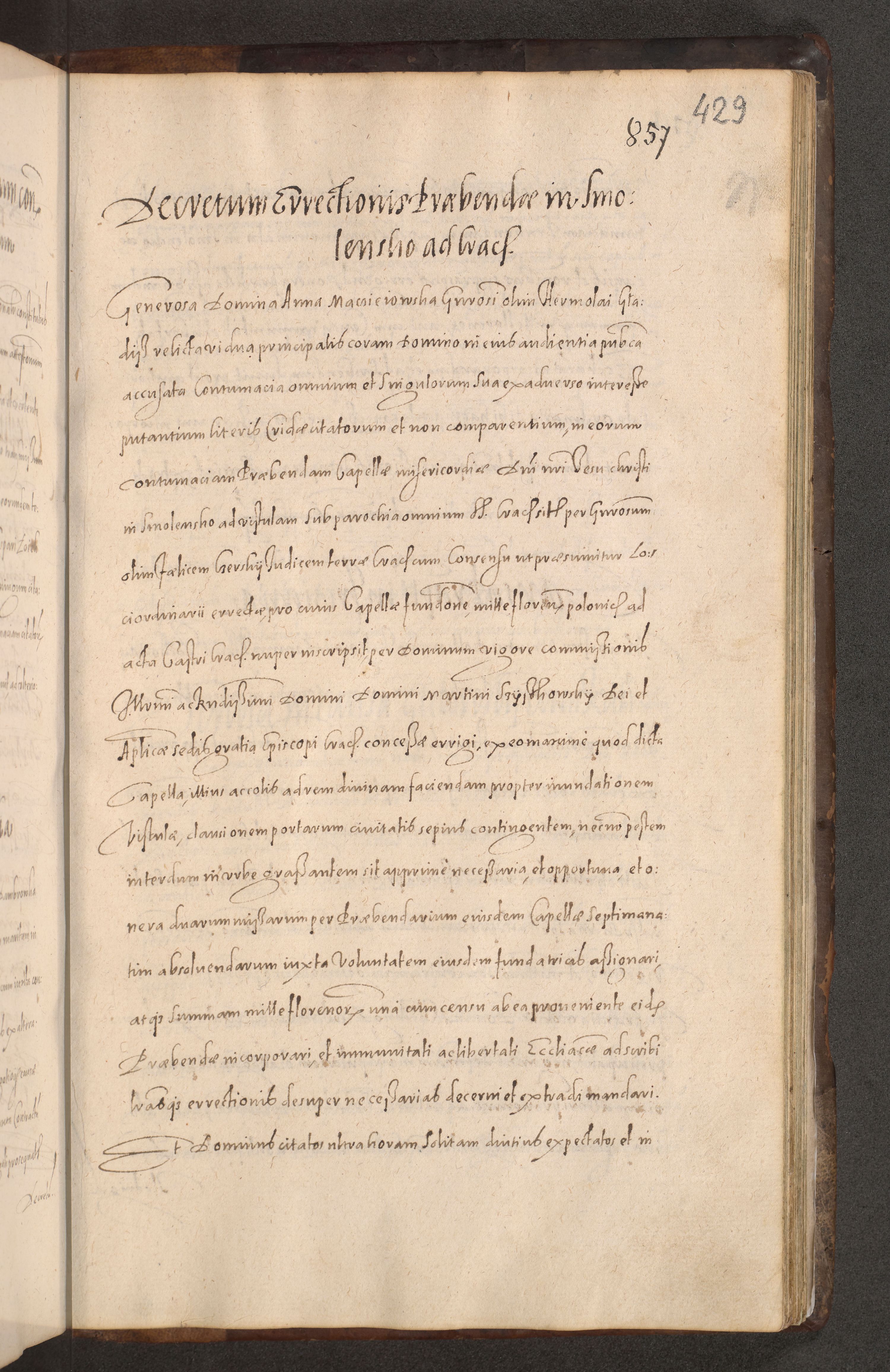 Acta actorum causarum obligationum institutionum decretorum constitutionum quietationum resignationum cissionum et atiaru obsernationum tam indiciariarum quam extra indiciariarum coram Admodum Reverendo Domino Joanne Zerzynski Canonico Vicario in Spiritualibus et Officiali generali Cracoviensis ad Annum Domini Millesimum Sextentissimum Vigesimum Indictione tertia Pontificatus SSmi D. N. D. Pauli Divina pronidentia Papae V. foeliciter moderni anno ipsins subfelici regimine Diocesis Cracoviensis Illustrissimi ac Reverendissimi D. N. D. Martini Szyszkowski Deigratia Episcopus Cracoviensis Ducis Severiensis in continuantur.