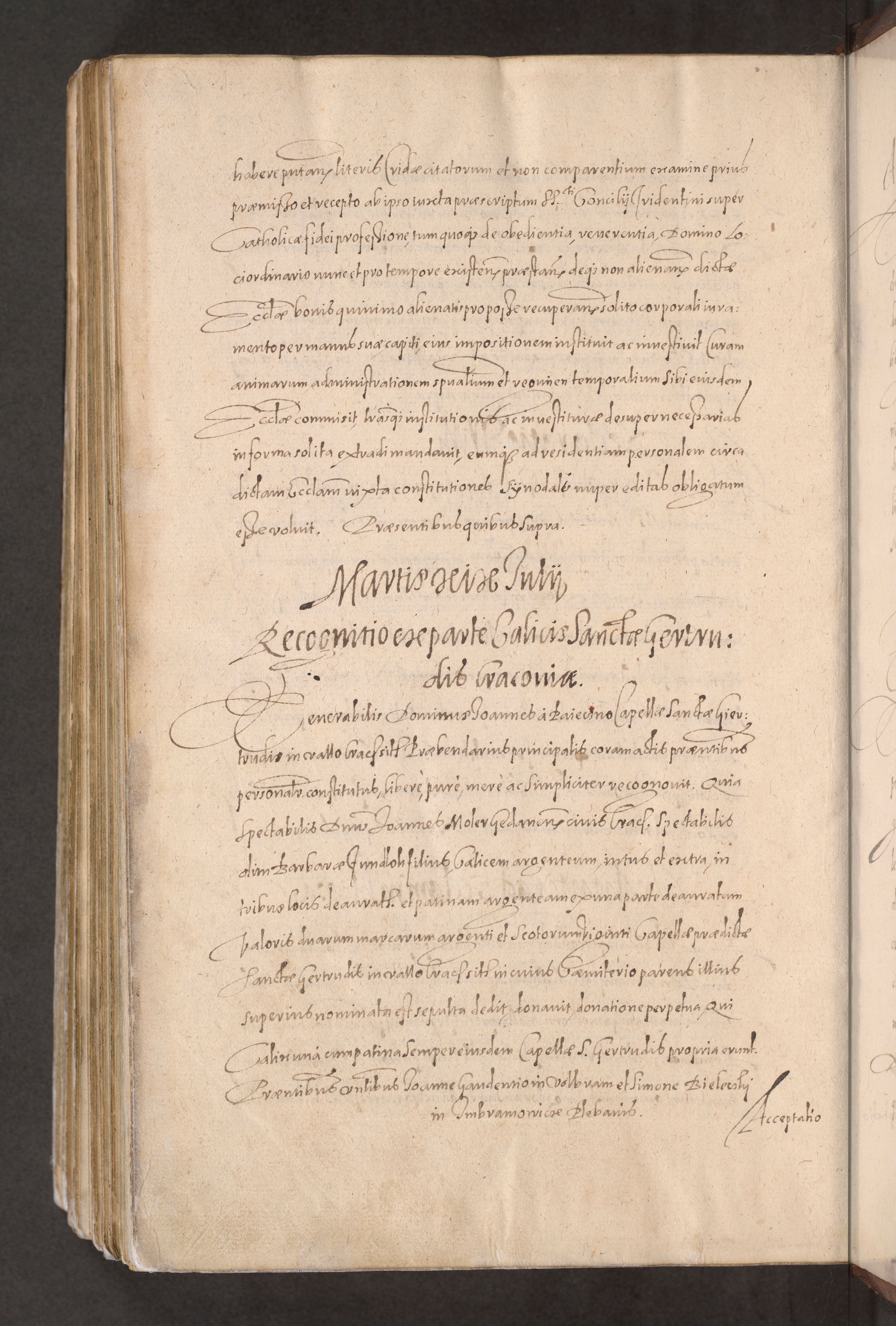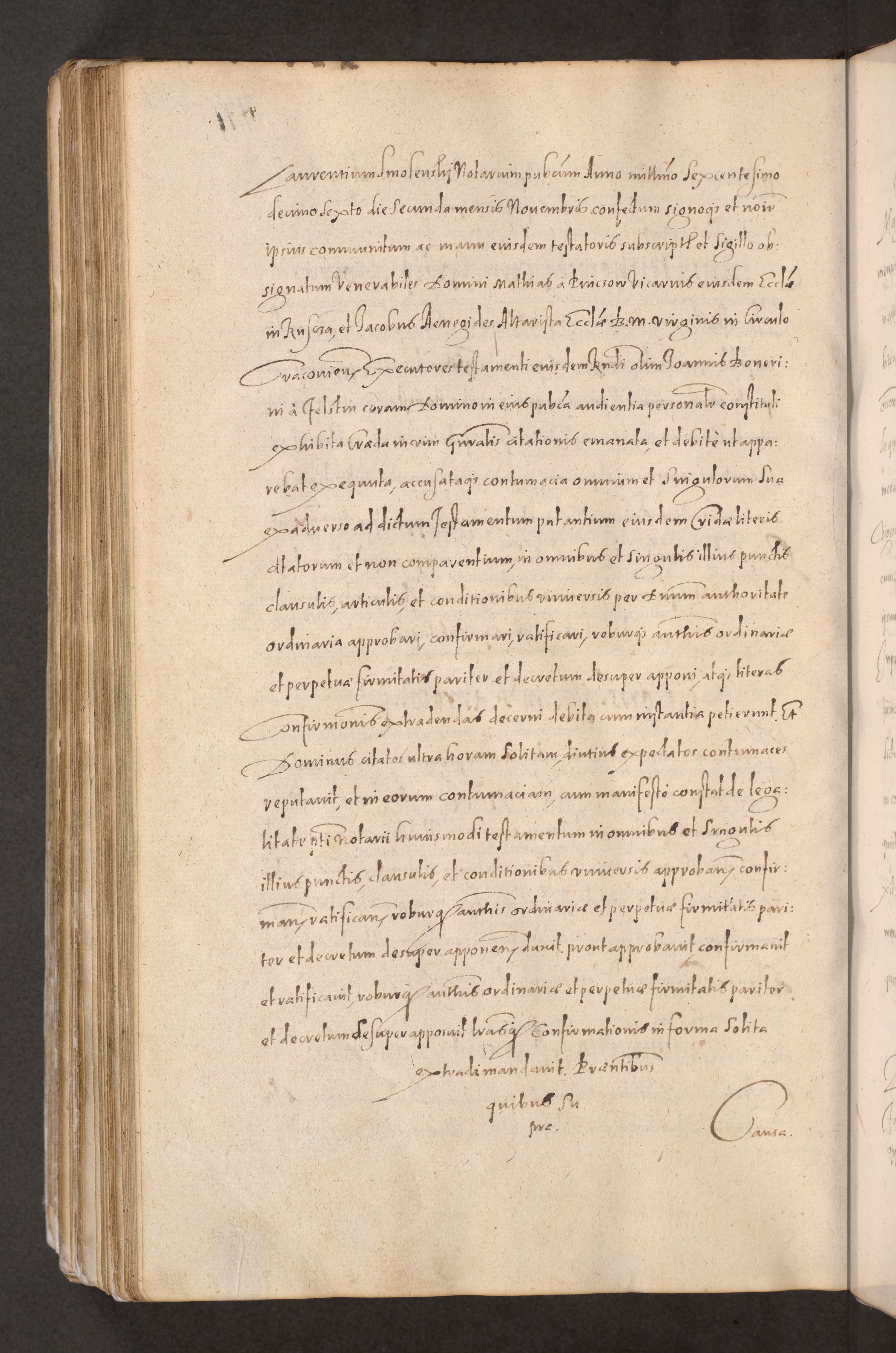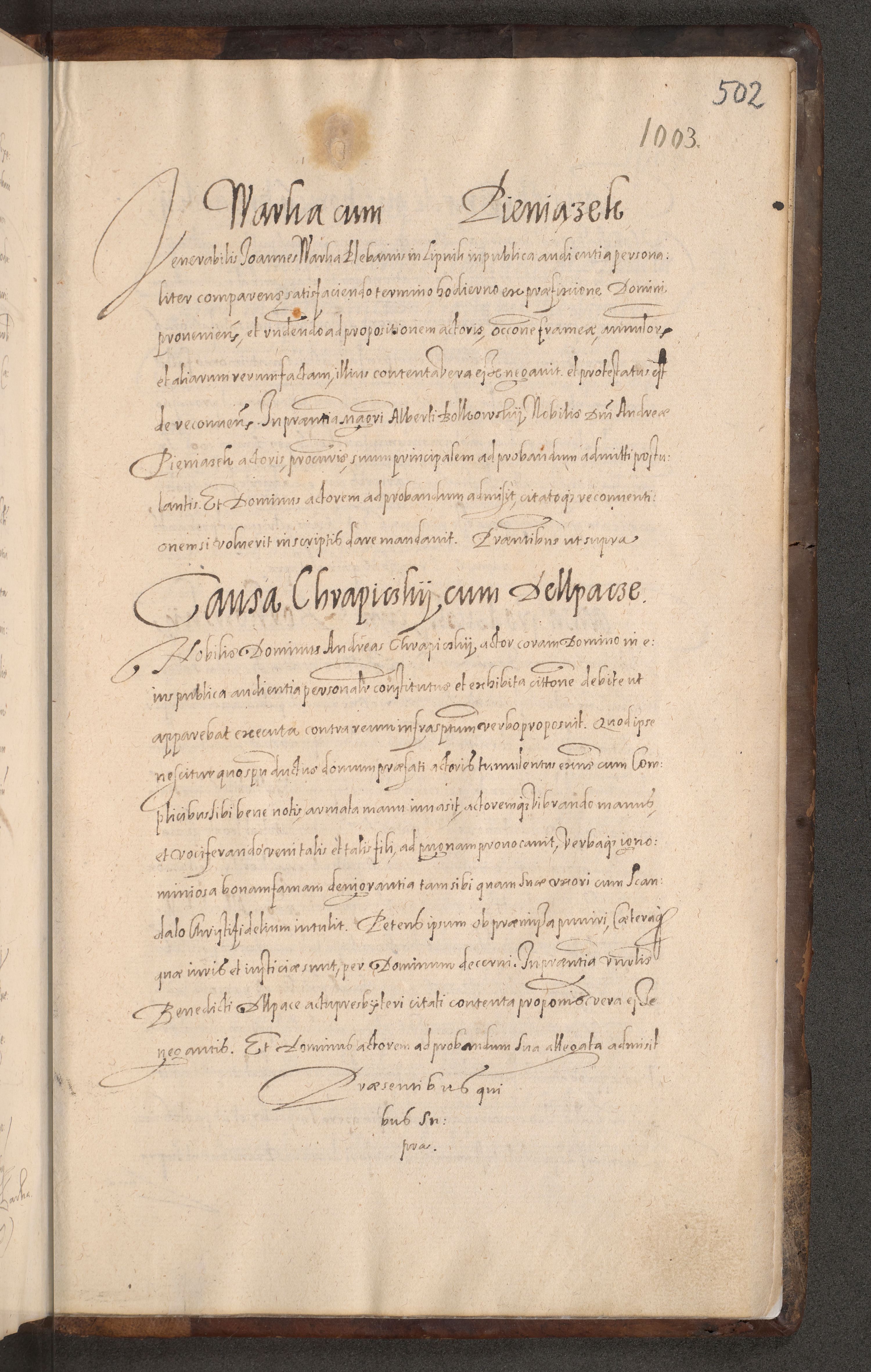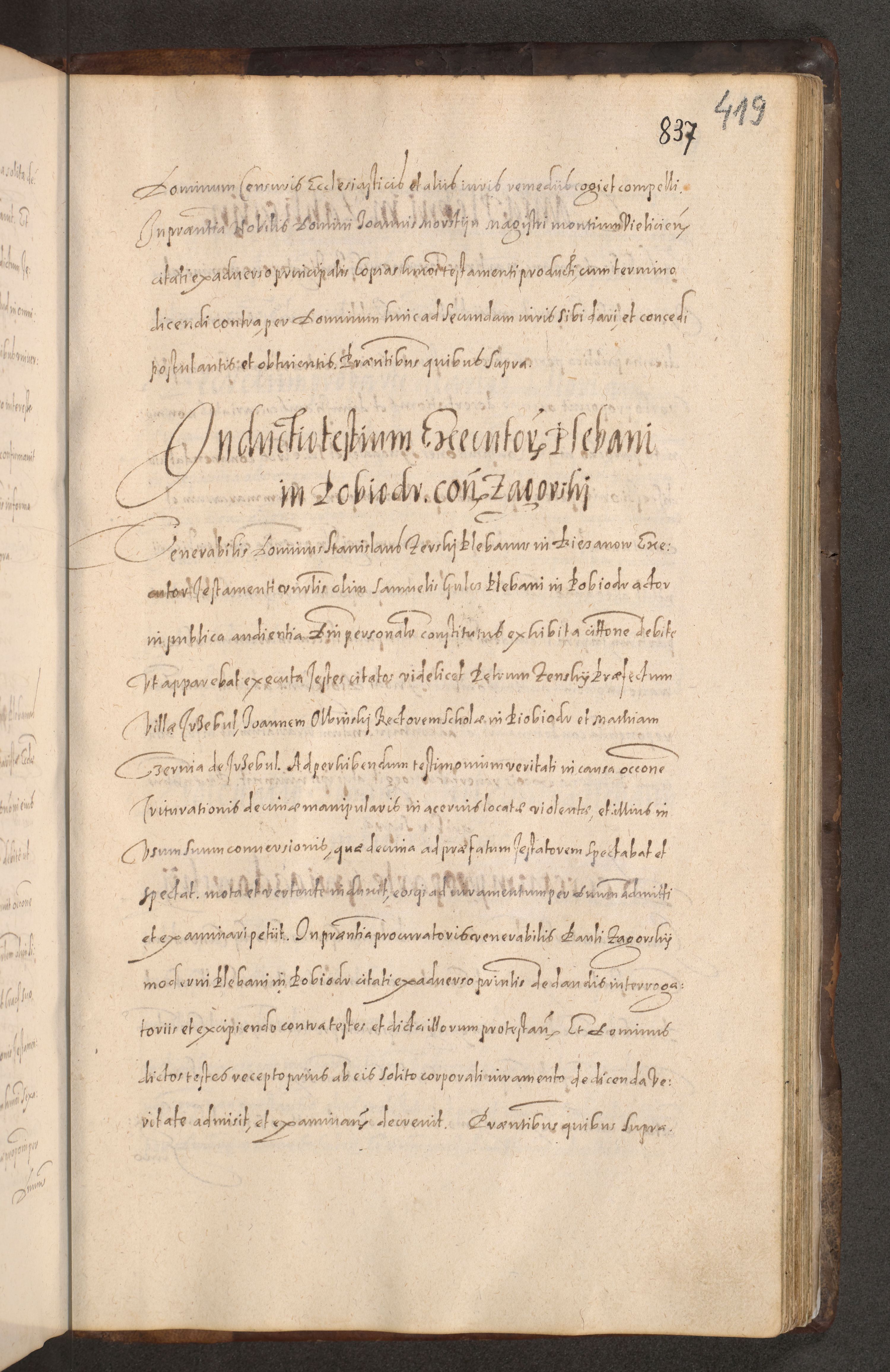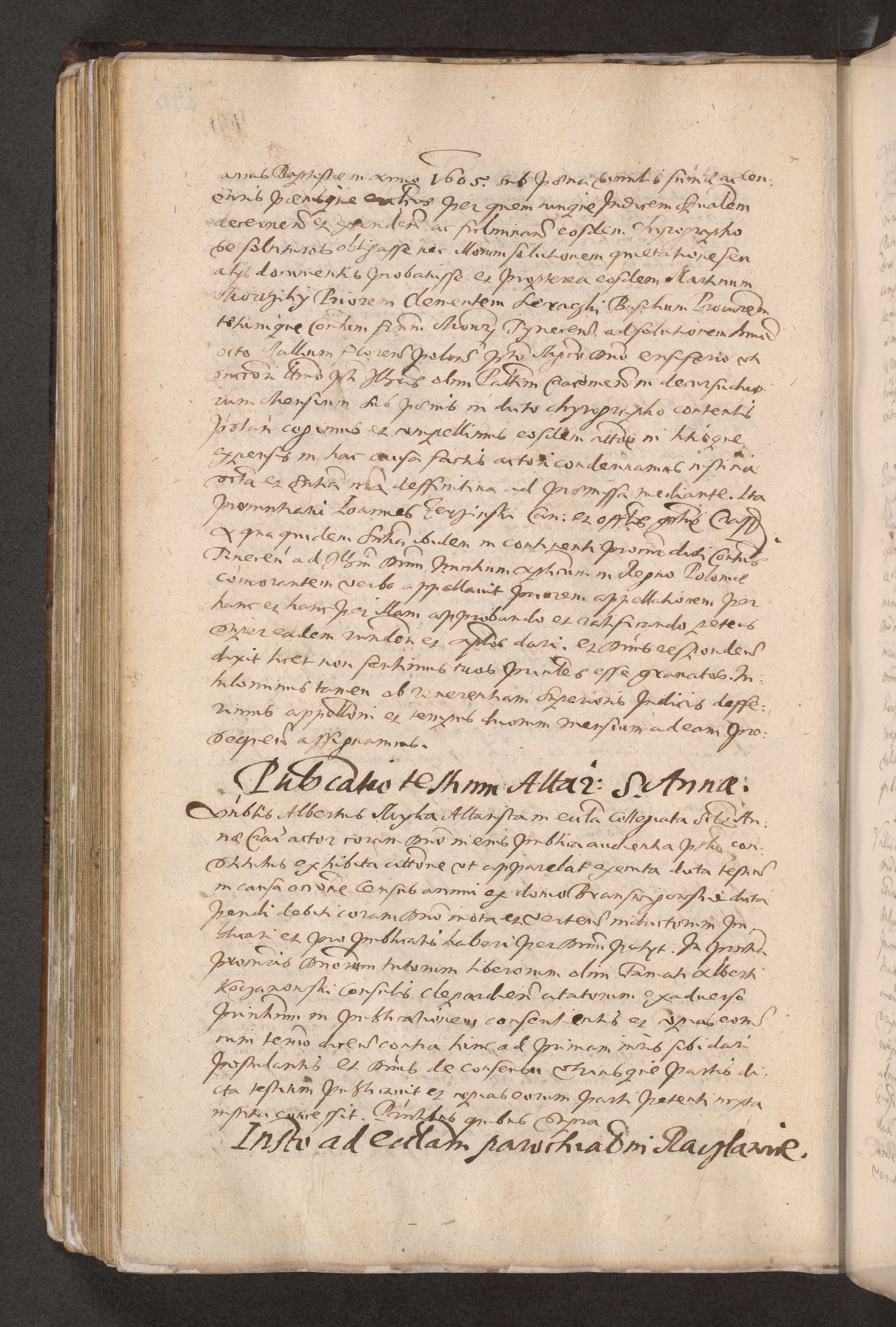 Acta actorum causarum obligationum institutionum decretorum constitutionum quietationum resignationum cissionum et atiaru obsernationum tam indiciariarum quam extra indiciariarum coram Admodum Reverendo Domino Joanne Zerzynski Canonico Vicario in Spiritualibus et Officiali generali Cracoviensis ad Annum Domini Millesimum Sextentissimum Vigesimum Indictione tertia Pontificatus SSmi D. N. D. Pauli Divina pronidentia Papae V. foeliciter moderni anno ipsins subfelici regimine Diocesis Cracoviensis Illustrissimi ac Reverendissimi D. N. D. Martini Szyszkowski Deigratia Episcopus Cracoviensis Ducis Severiensis in continuantur.