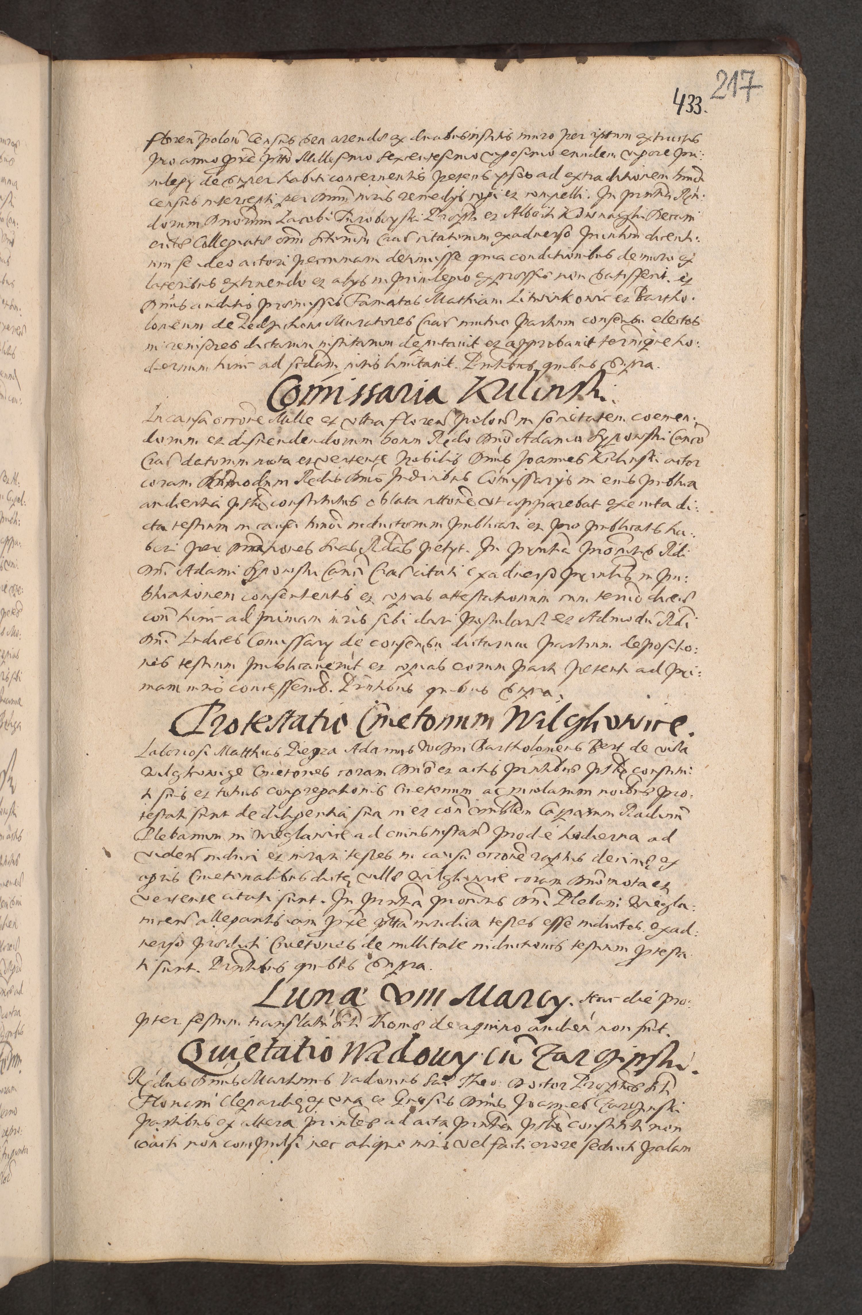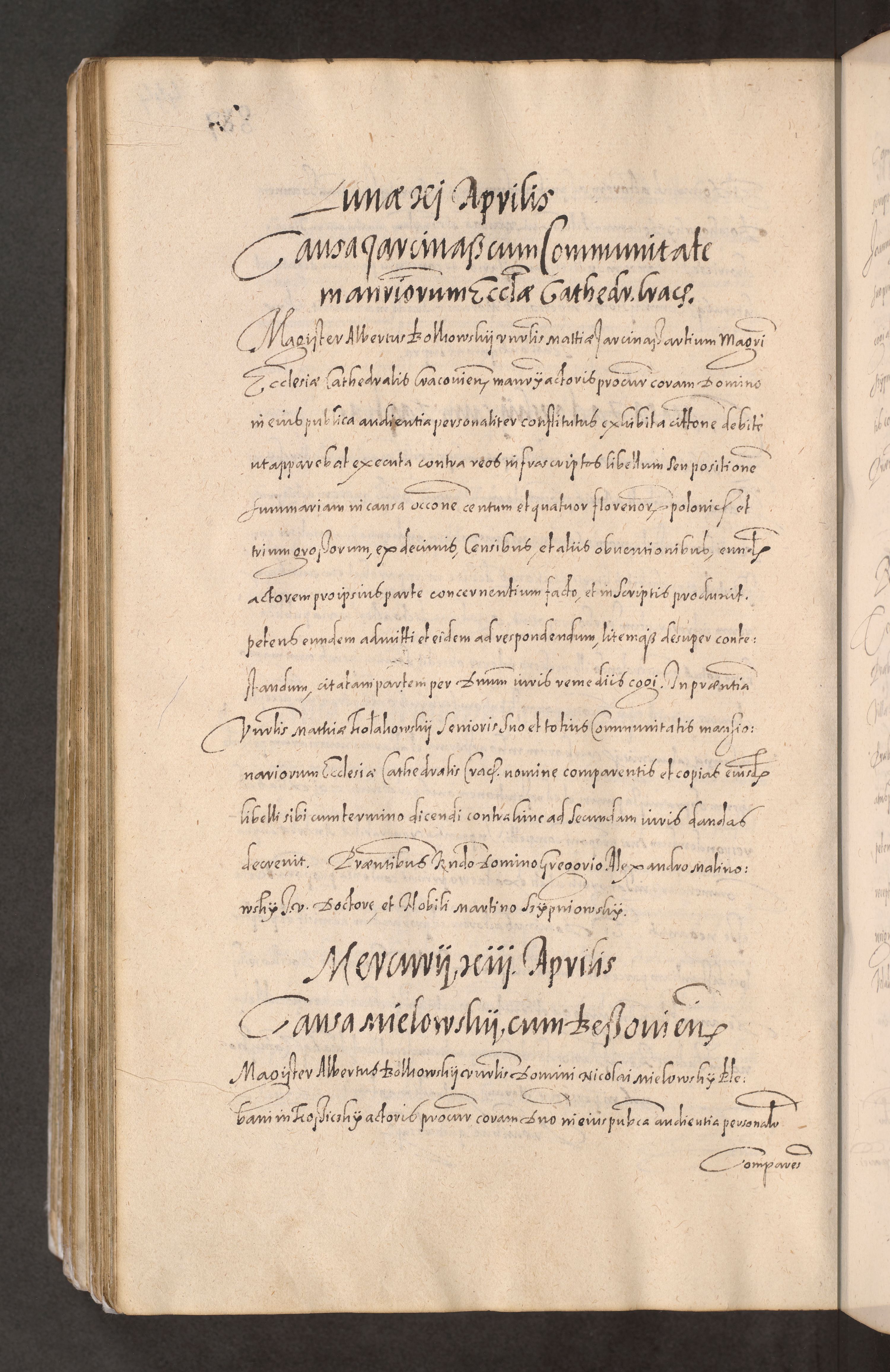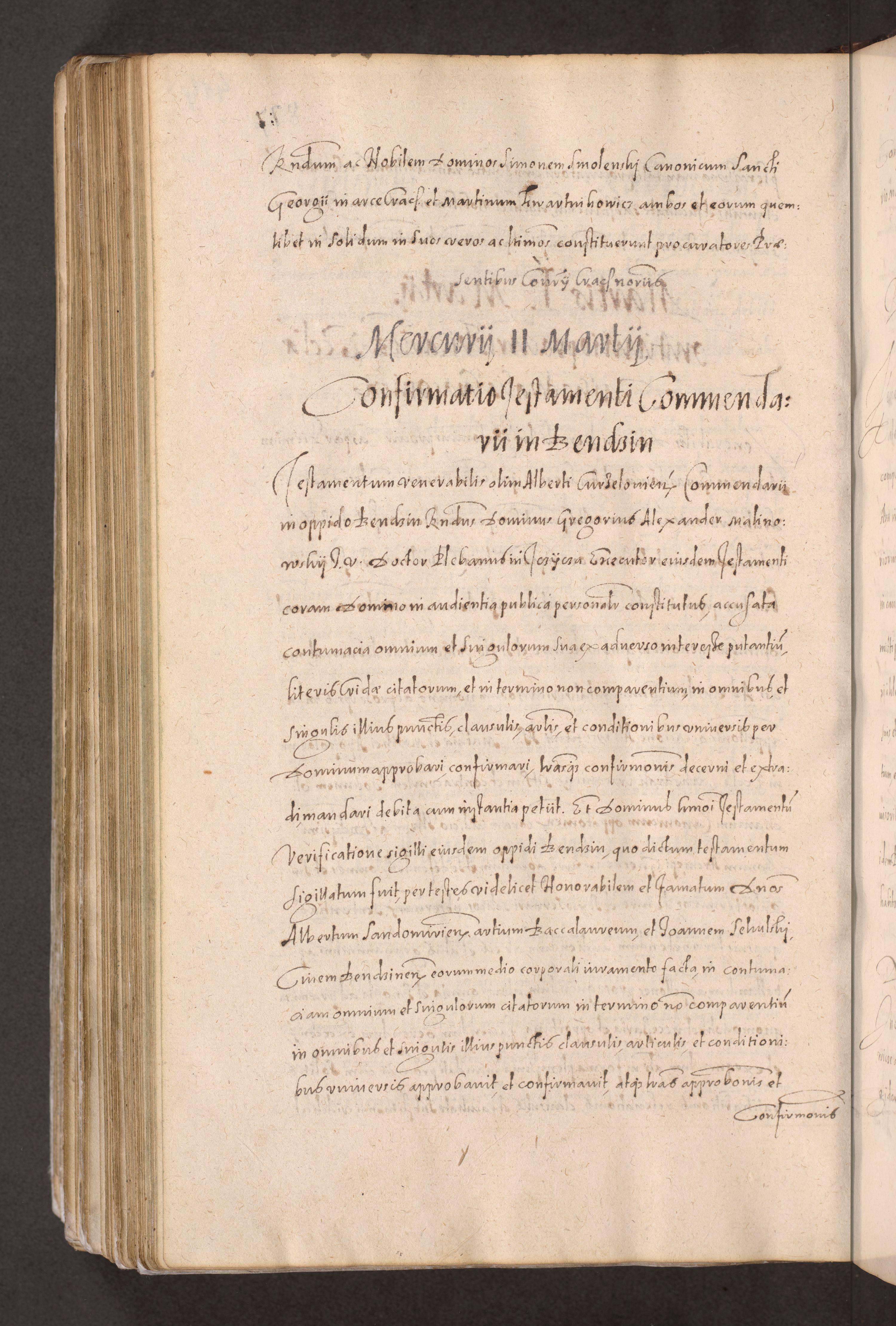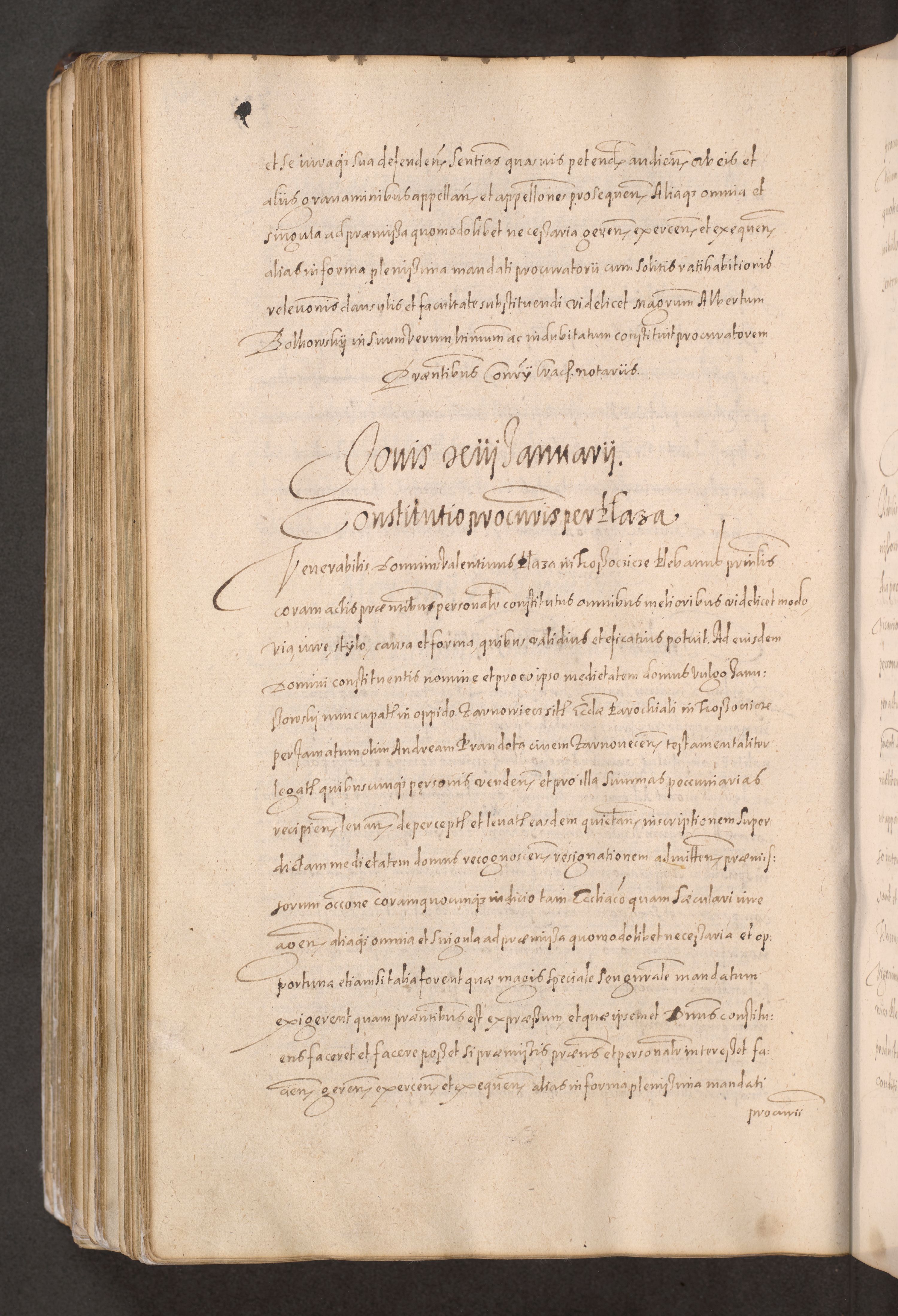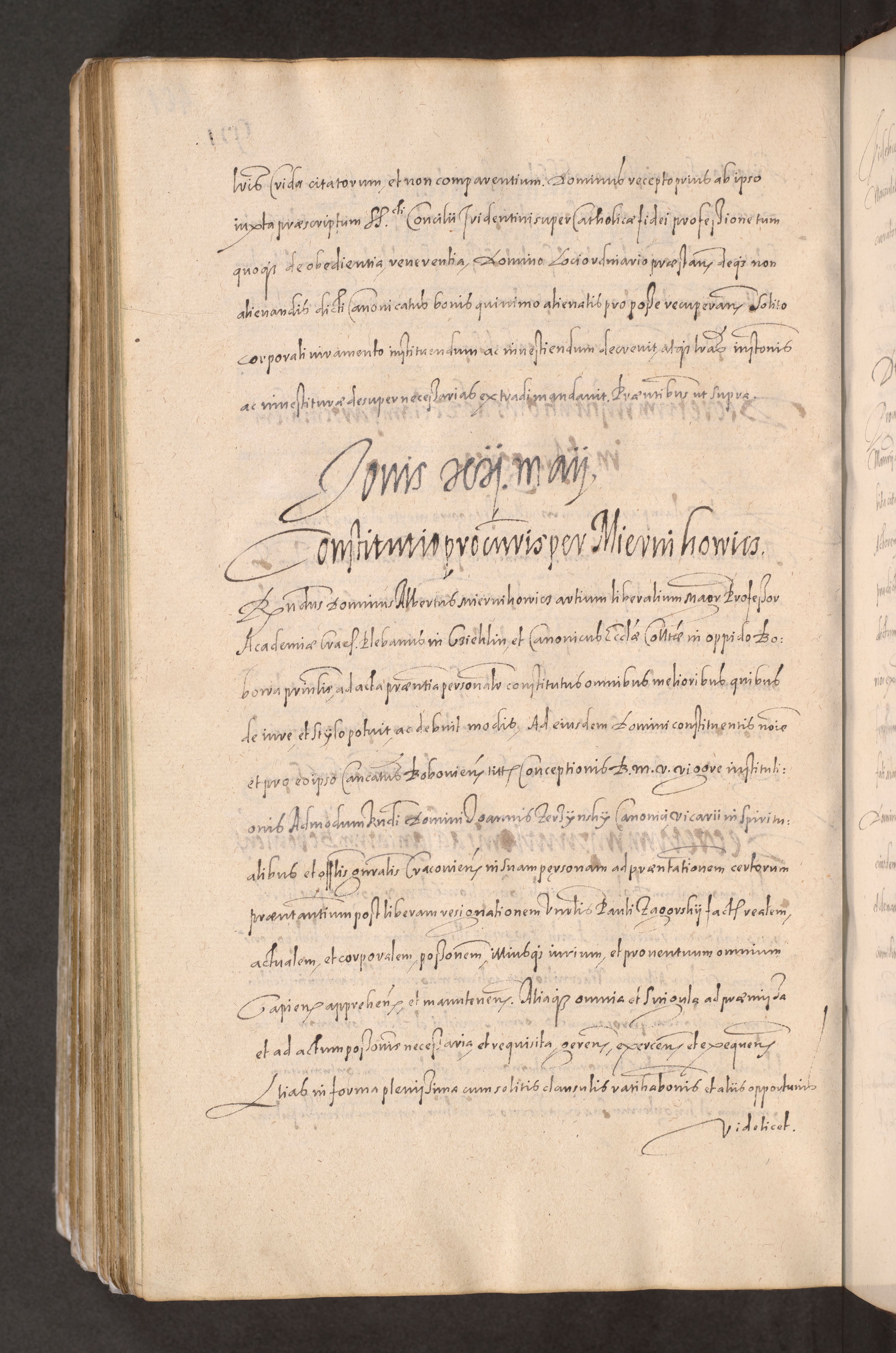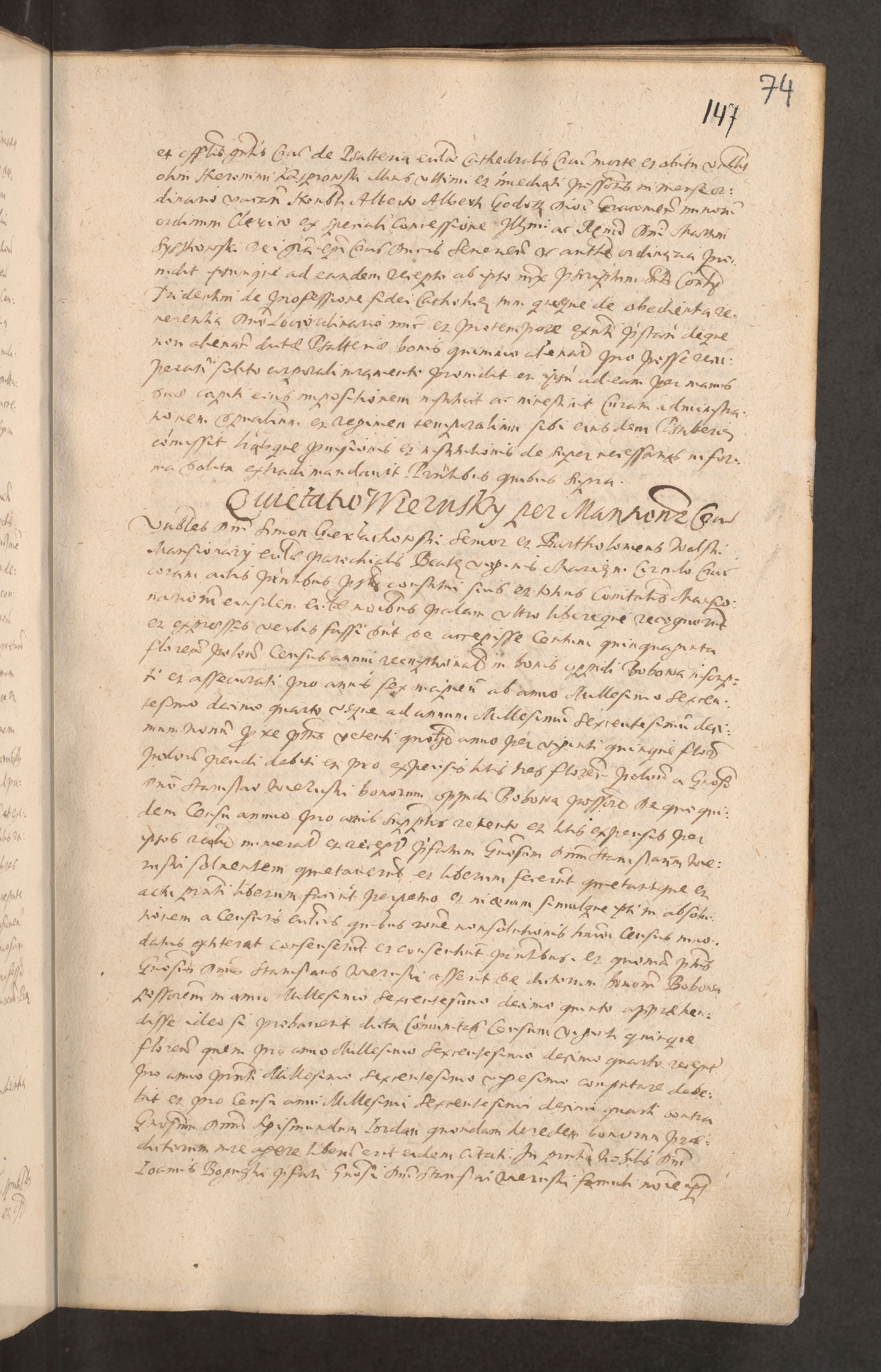 Acta actorum causarum obligationum institutionum decretorum constitutionum quietationum resignationum cissionum et atiaru obsernationum tam indiciariarum quam extra indiciariarum coram Admodum Reverendo Domino Joanne Zerzynski Canonico Vicario in Spiritualibus et Officiali generali Cracoviensis ad Annum Domini Millesimum Sextentissimum Vigesimum Indictione tertia Pontificatus SSmi D. N. D. Pauli Divina pronidentia Papae V. foeliciter moderni anno ipsins subfelici regimine Diocesis Cracoviensis Illustrissimi ac Reverendissimi D. N. D. Martini Szyszkowski Deigratia Episcopus Cracoviensis Ducis Severiensis in continuantur.