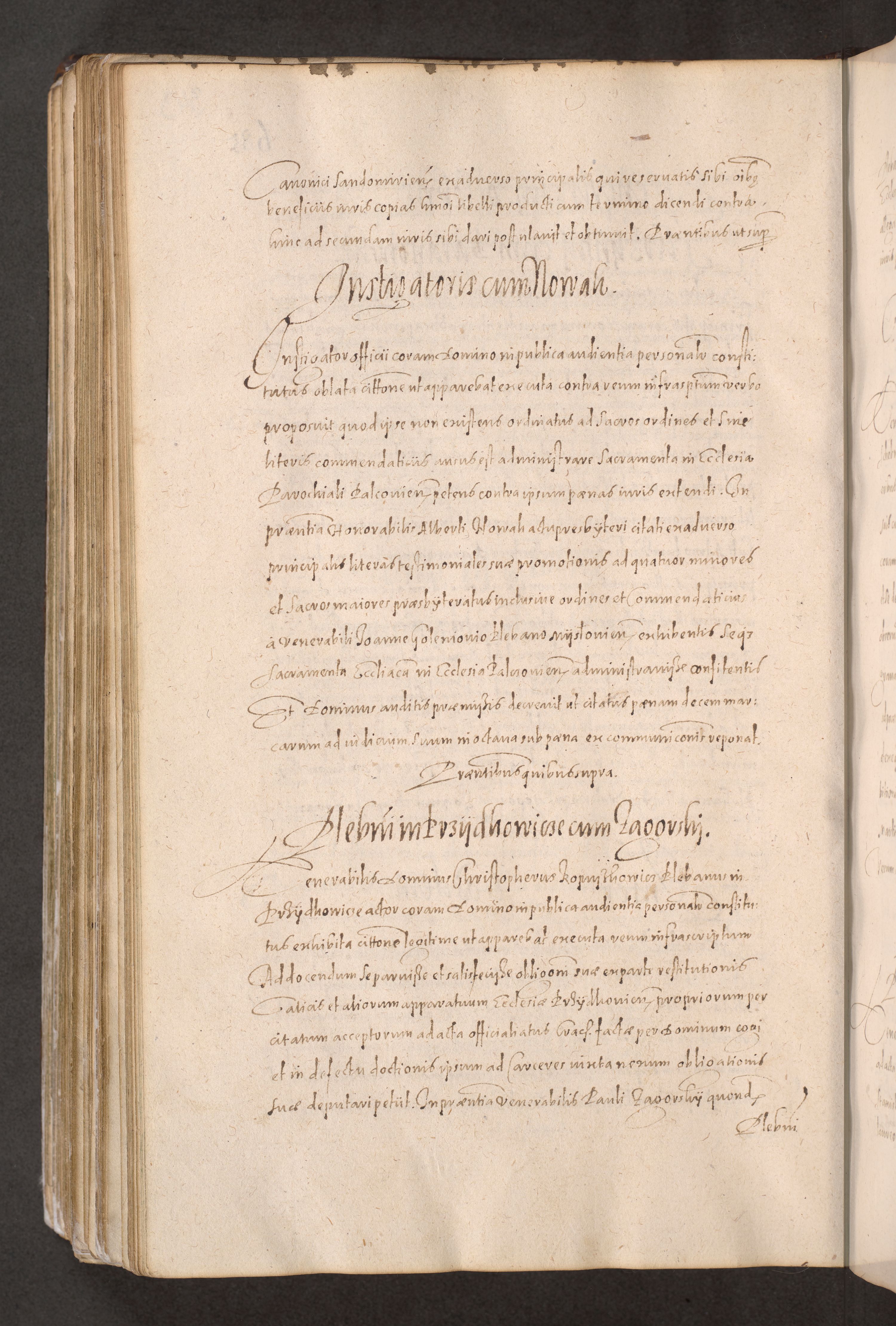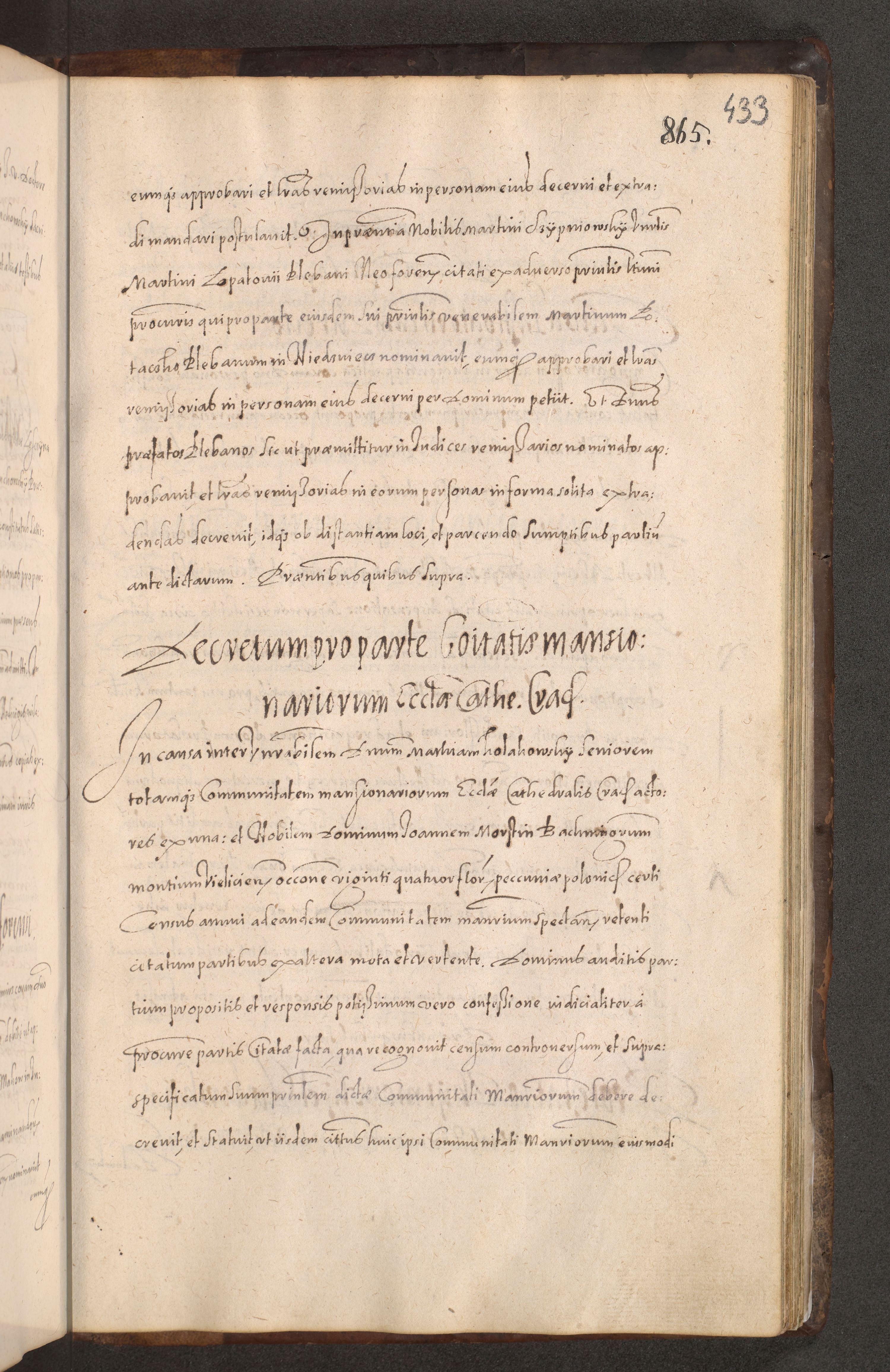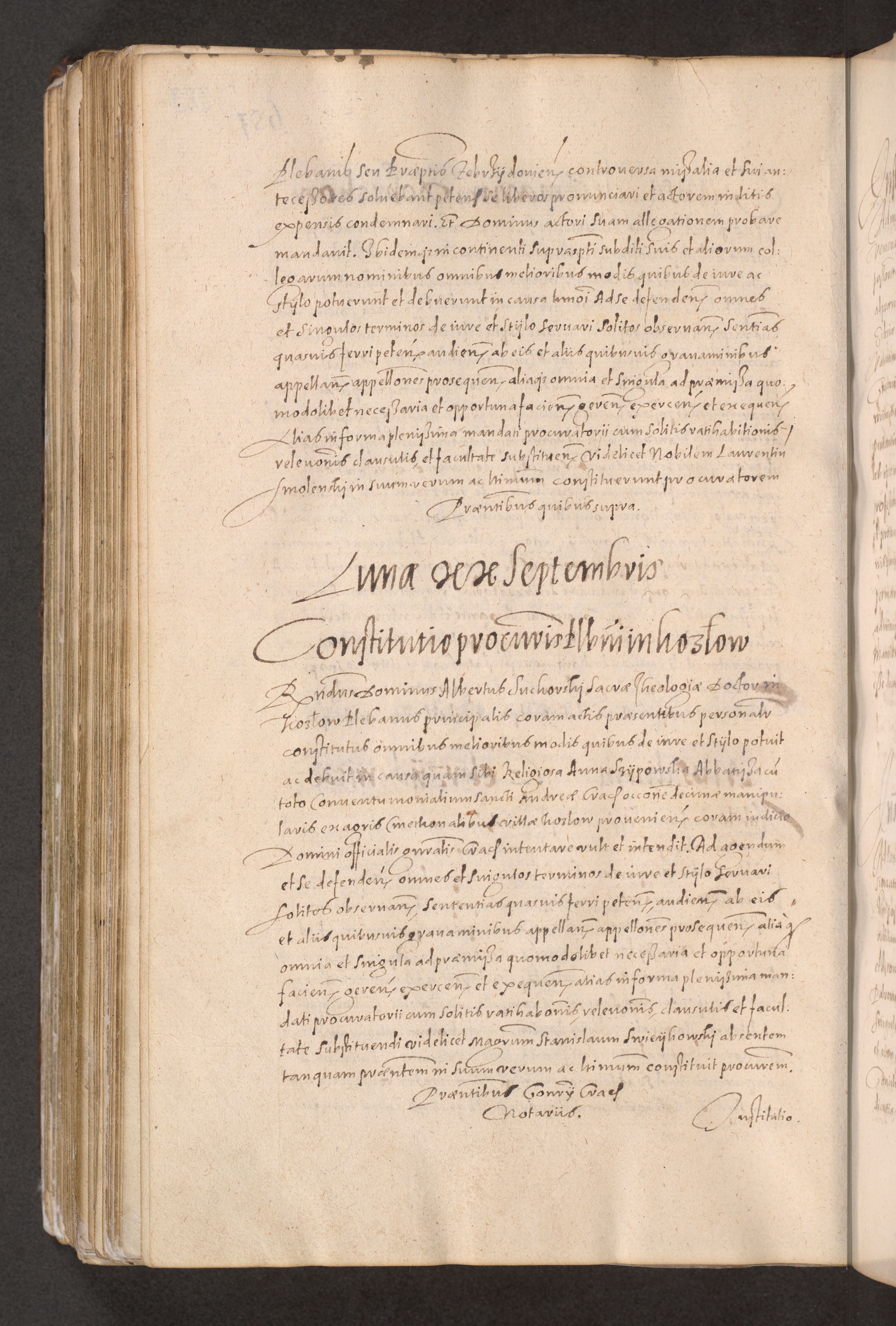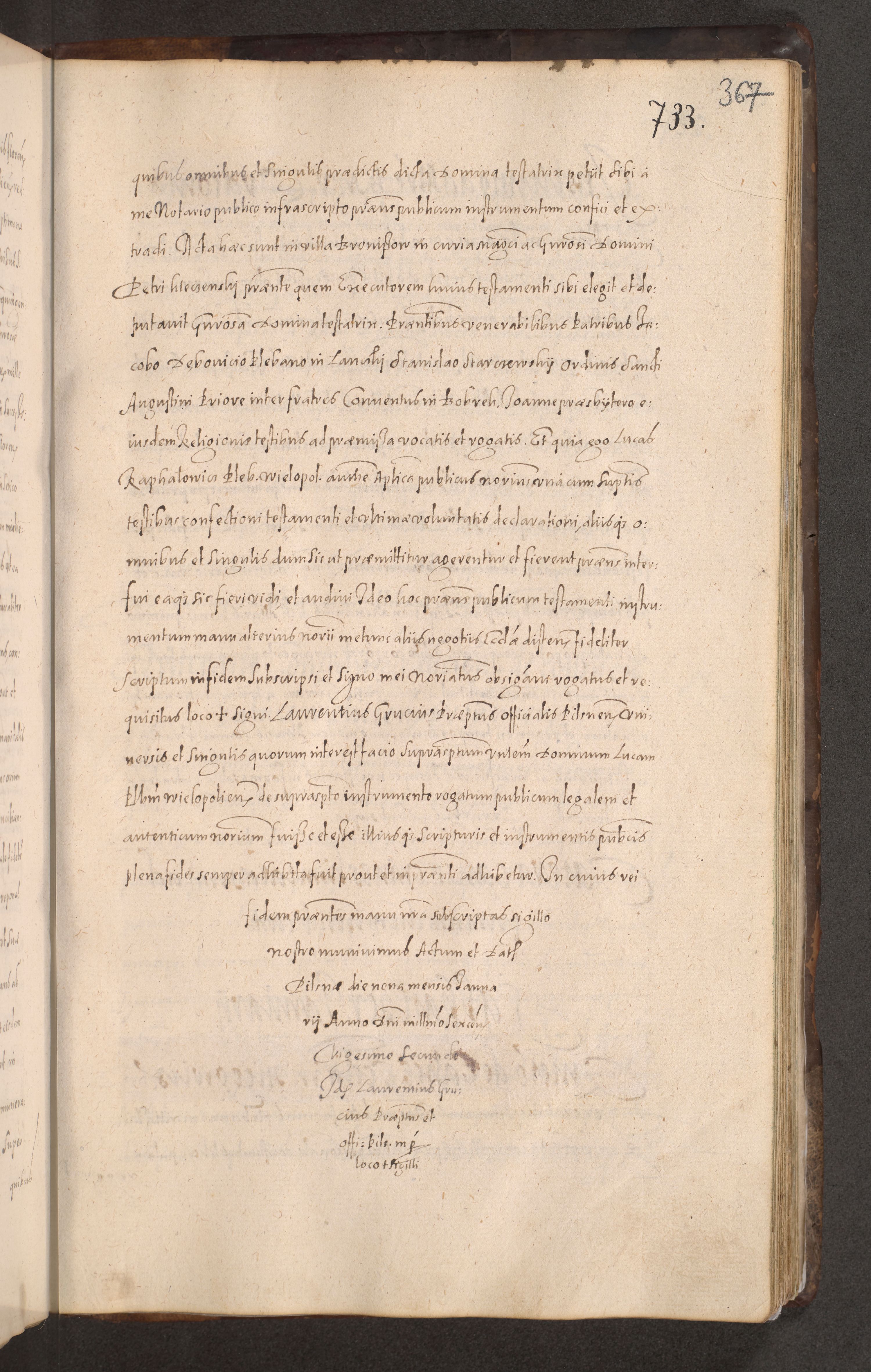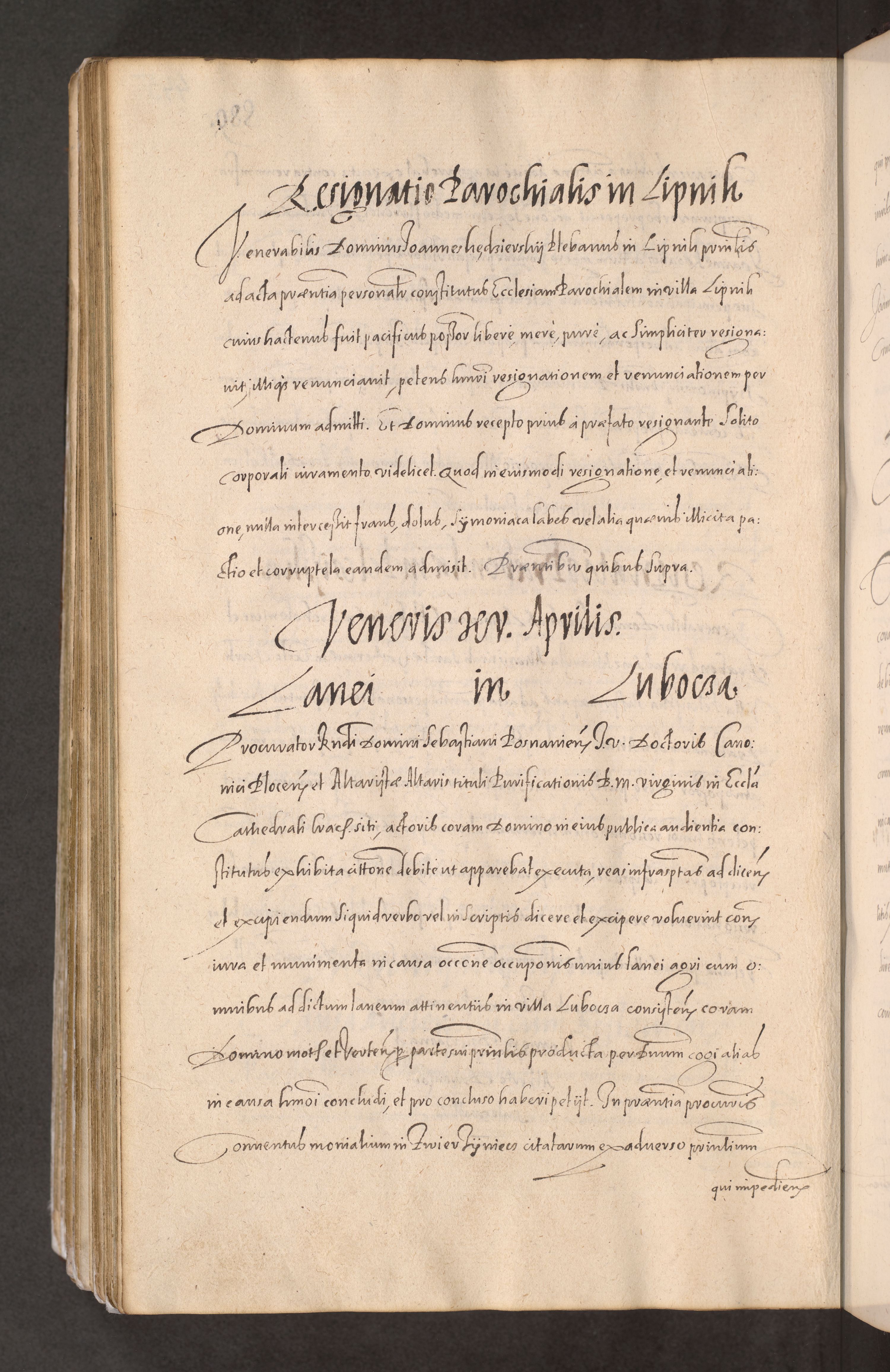Acta actorum causarum obligationum institutionum decretorum constitutionum quietationum resignationum cissionum et atiaru obsernationum tam indiciariarum quam extra indiciariarum coram Admodum Reverendo Domino Joanne Zerzynski Canonico Vicario in Spiritualibus et Officiali generali Cracoviensis ad Annum Domini Millesimum Sextentissimum Vigesimum Indictione tertia Pontificatus SSmi D. N. D. Pauli Divina pronidentia Papae V. foeliciter moderni anno ipsins subfelici regimine Diocesis Cracoviensis Illustrissimi ac Reverendissimi D. N. D. Martini Szyszkowski Deigratia Episcopus Cracoviensis Ducis Severiensis in continuantur.