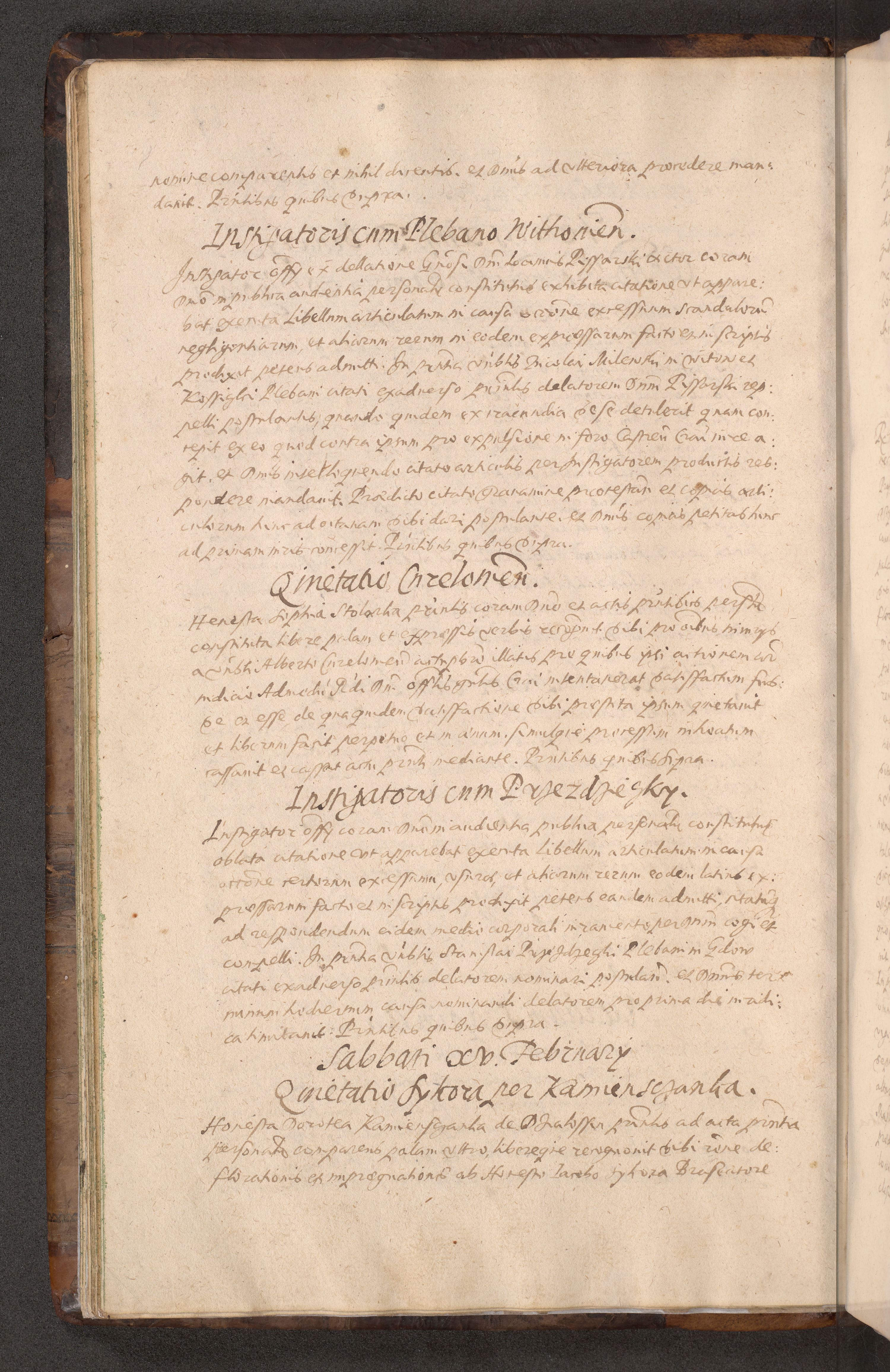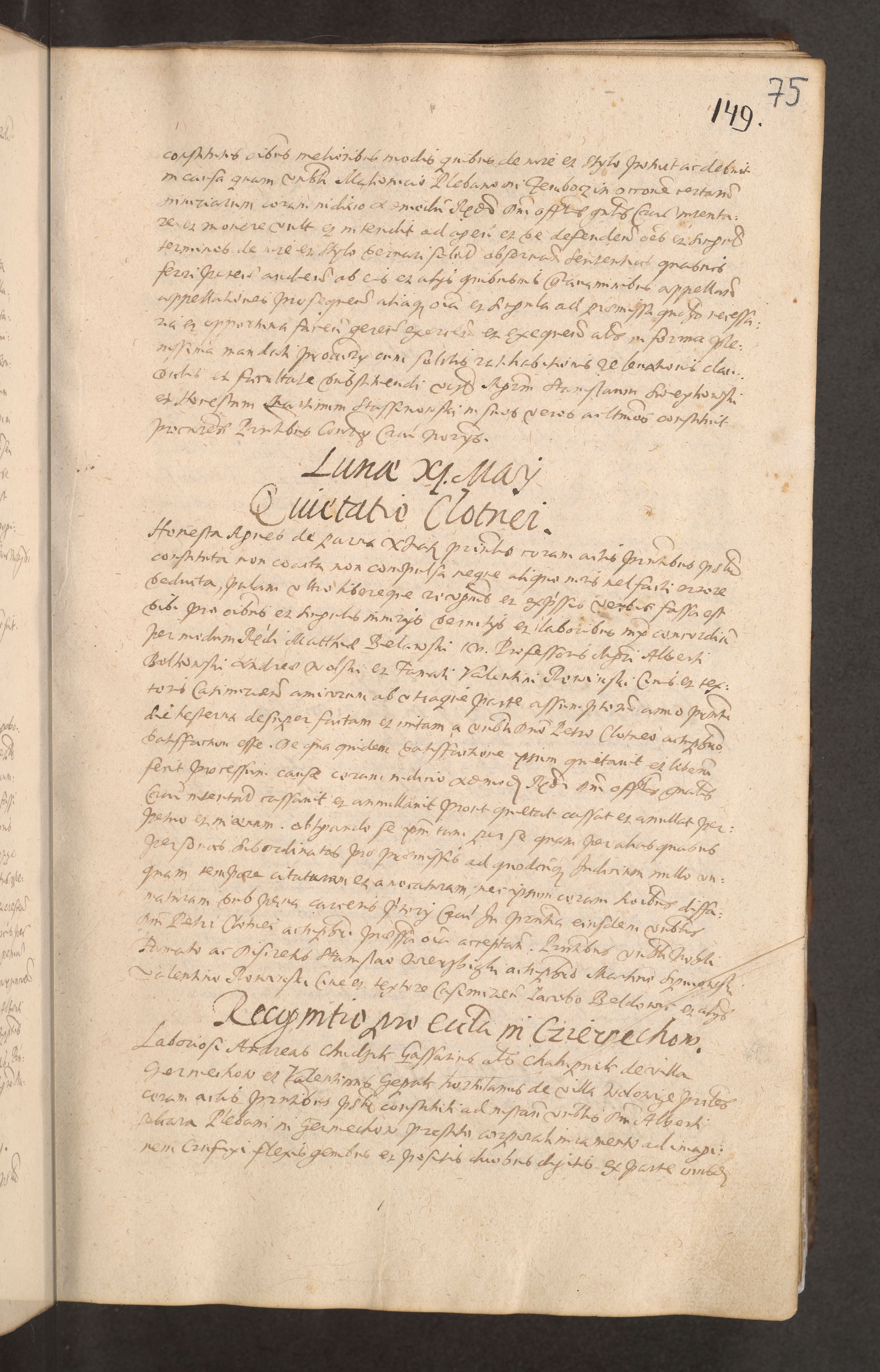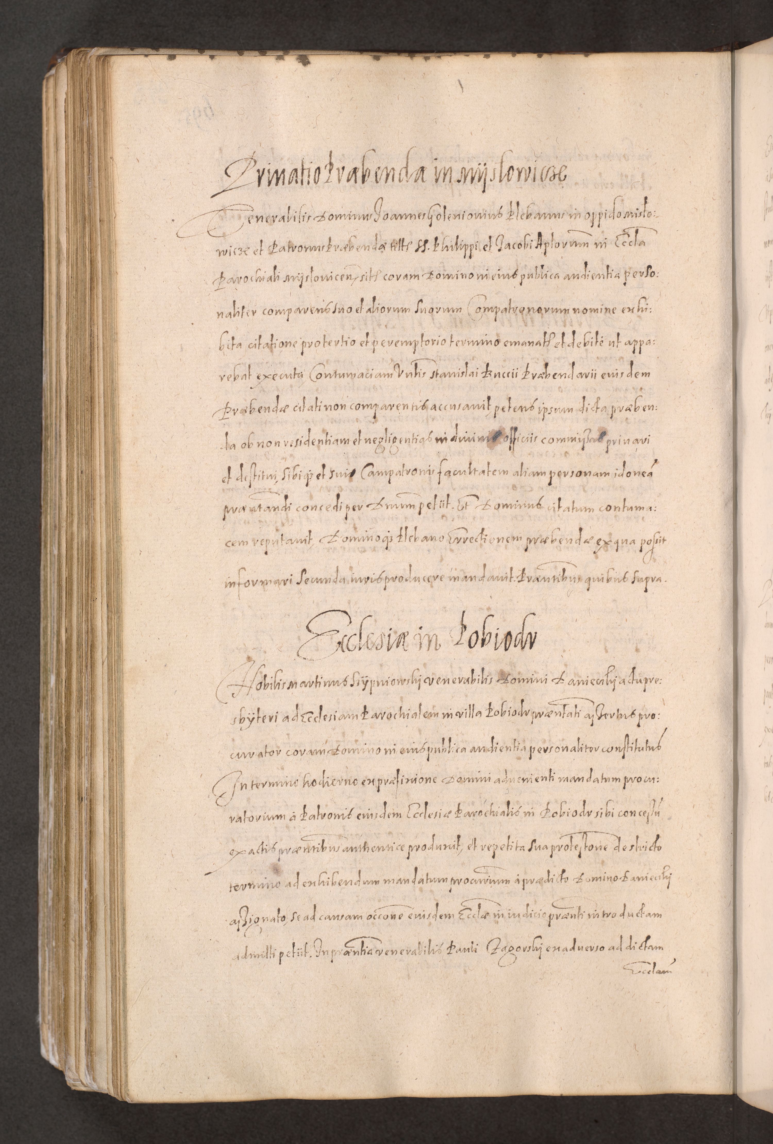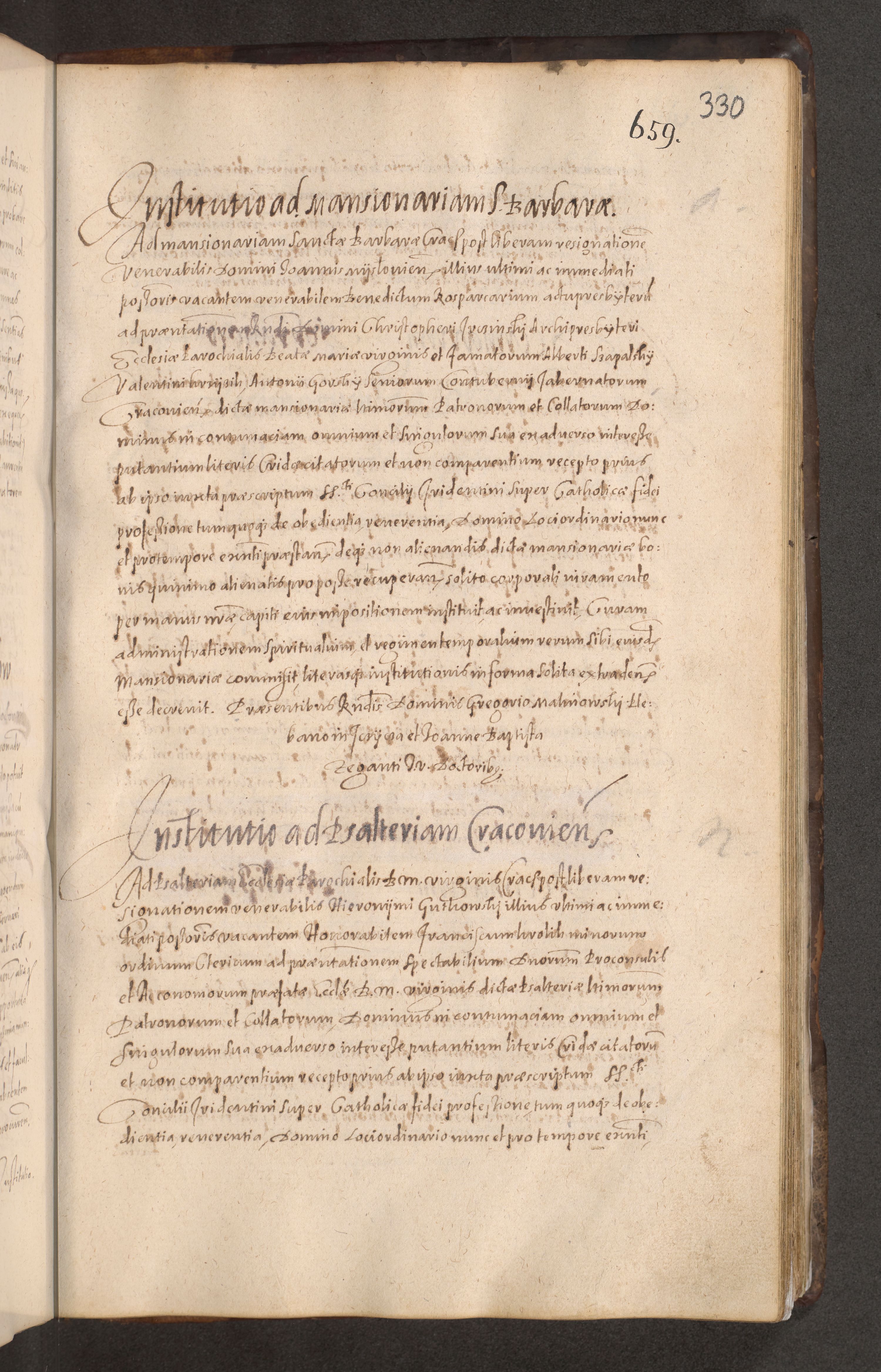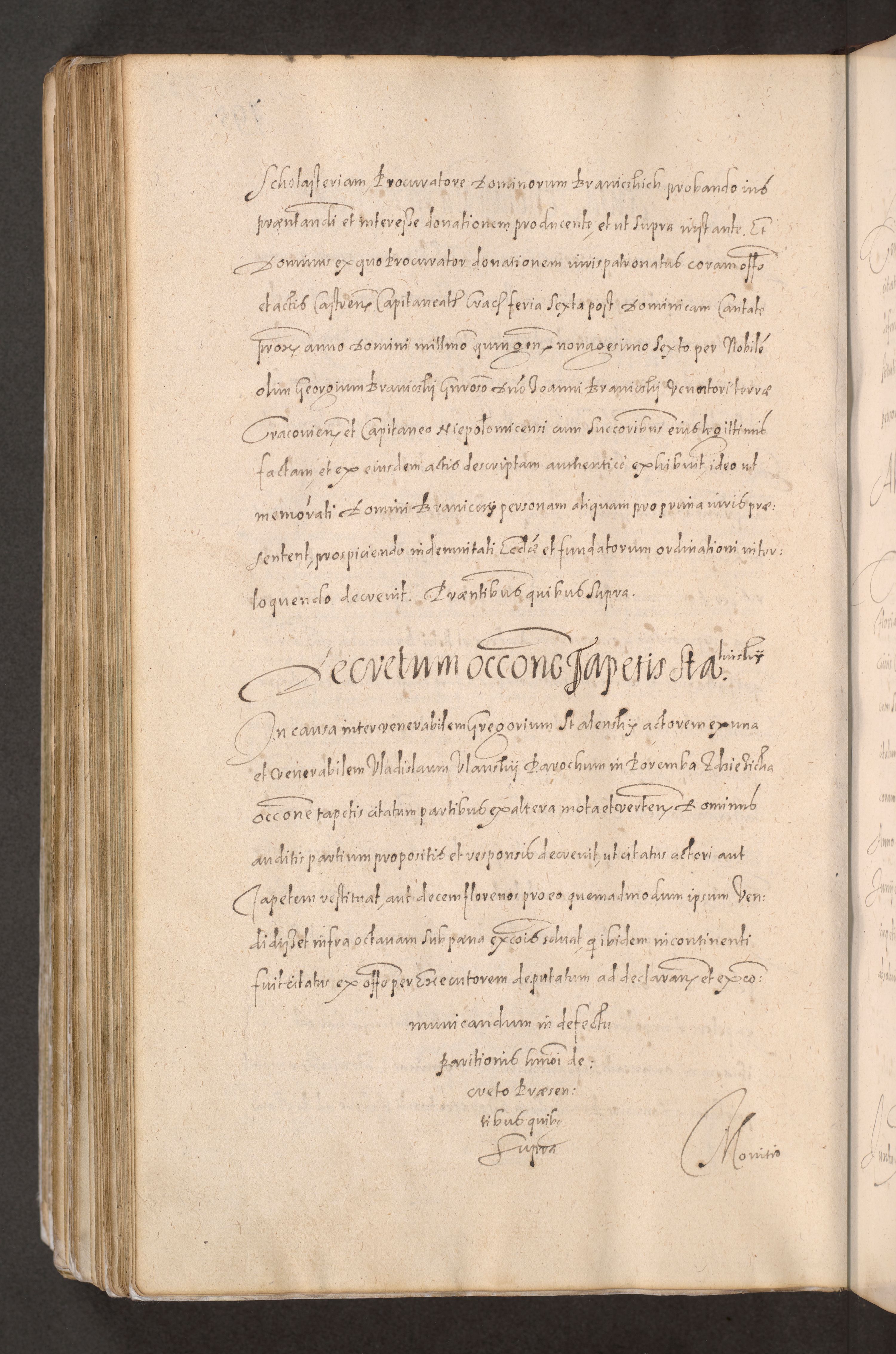 Acta actorum causarum obligationum institutionum decretorum constitutionum quietationum resignationum cissionum et atiaru obsernationum tam indiciariarum quam extra indiciariarum coram Admodum Reverendo Domino Joanne Zerzynski Canonico Vicario in Spiritualibus et Officiali generali Cracoviensis ad Annum Domini Millesimum Sextentissimum Vigesimum Indictione tertia Pontificatus SSmi D. N. D. Pauli Divina pronidentia Papae V. foeliciter moderni anno ipsins subfelici regimine Diocesis Cracoviensis Illustrissimi ac Reverendissimi D. N. D. Martini Szyszkowski Deigratia Episcopus Cracoviensis Ducis Severiensis in continuantur.