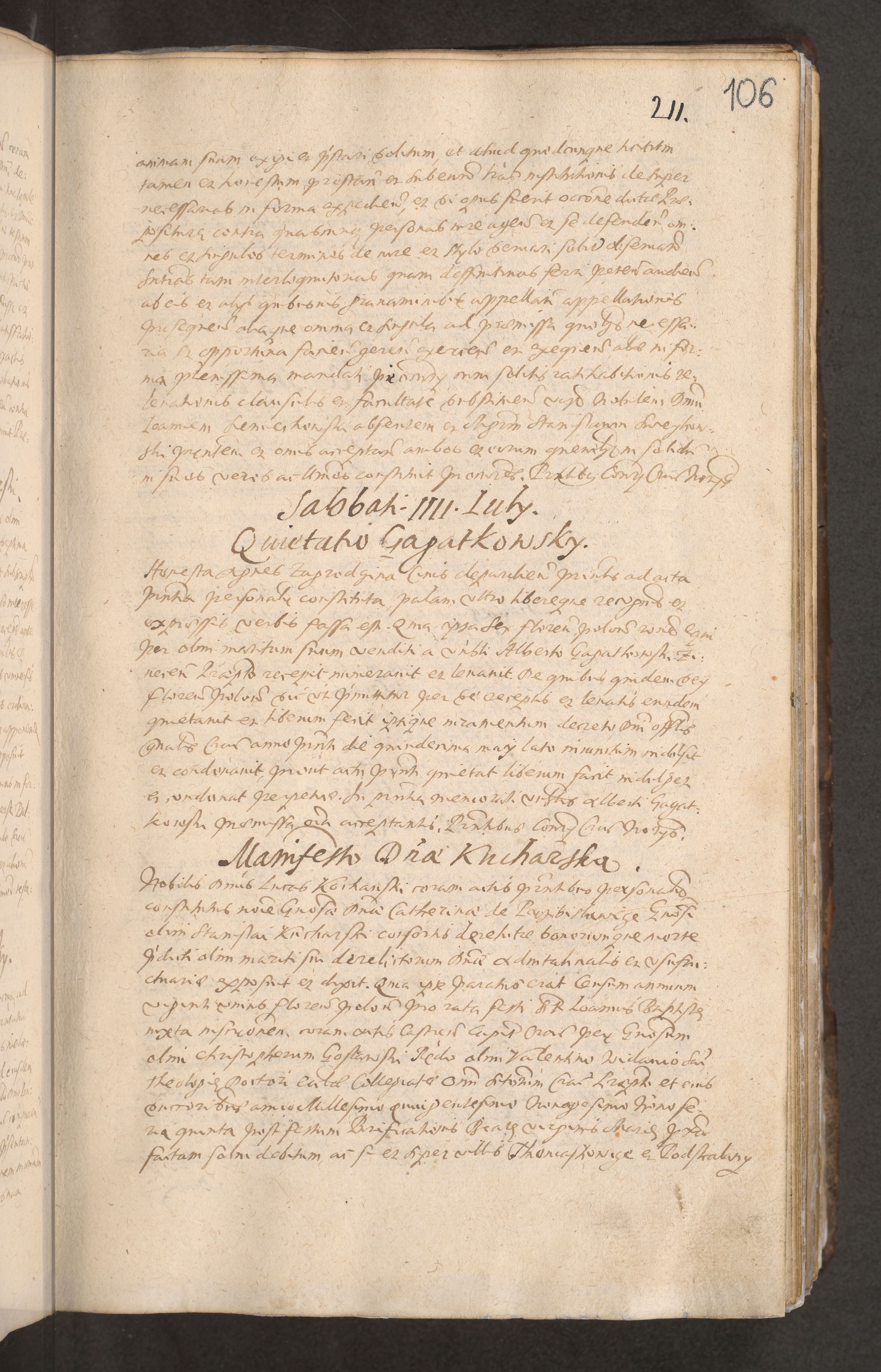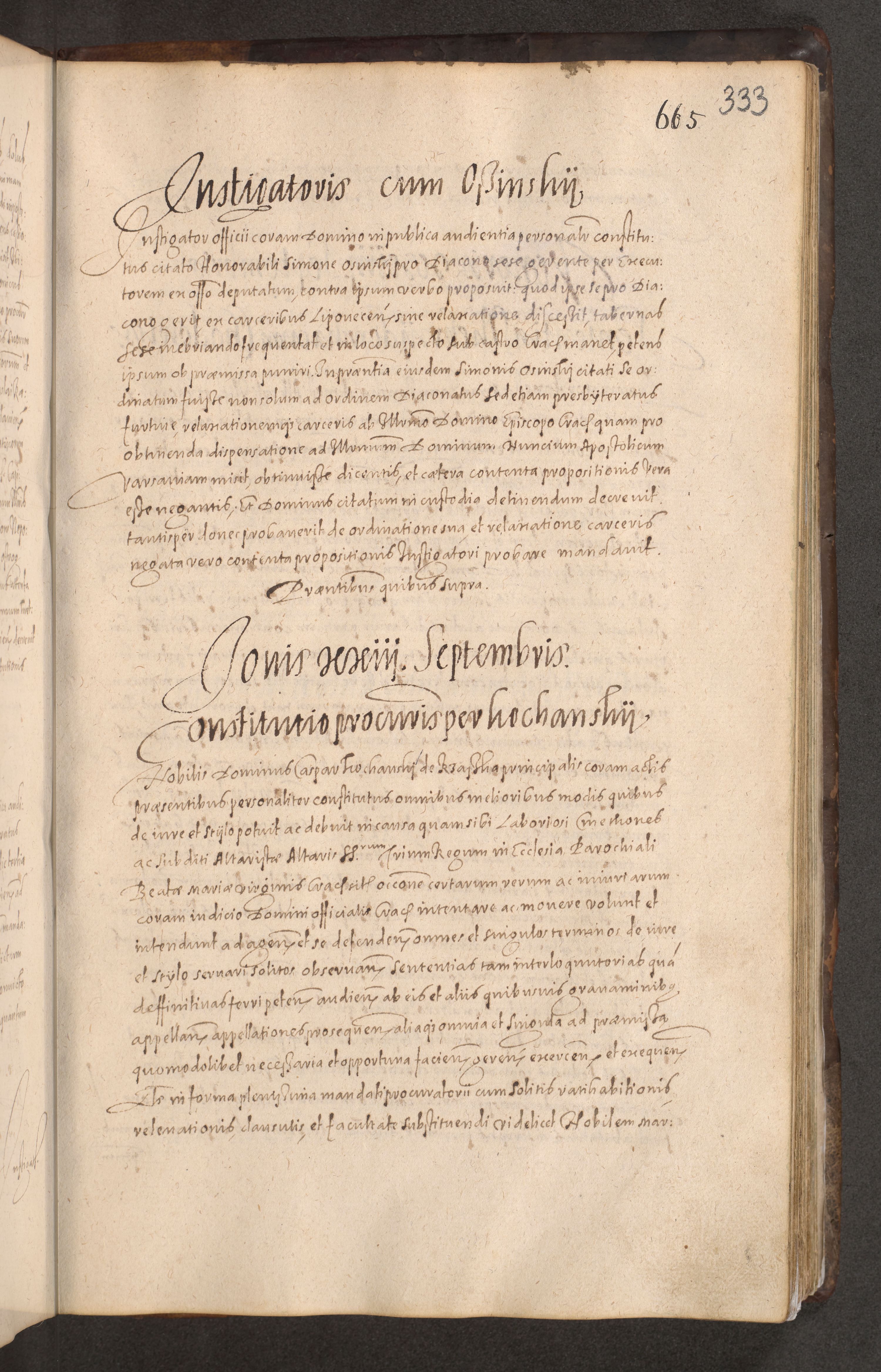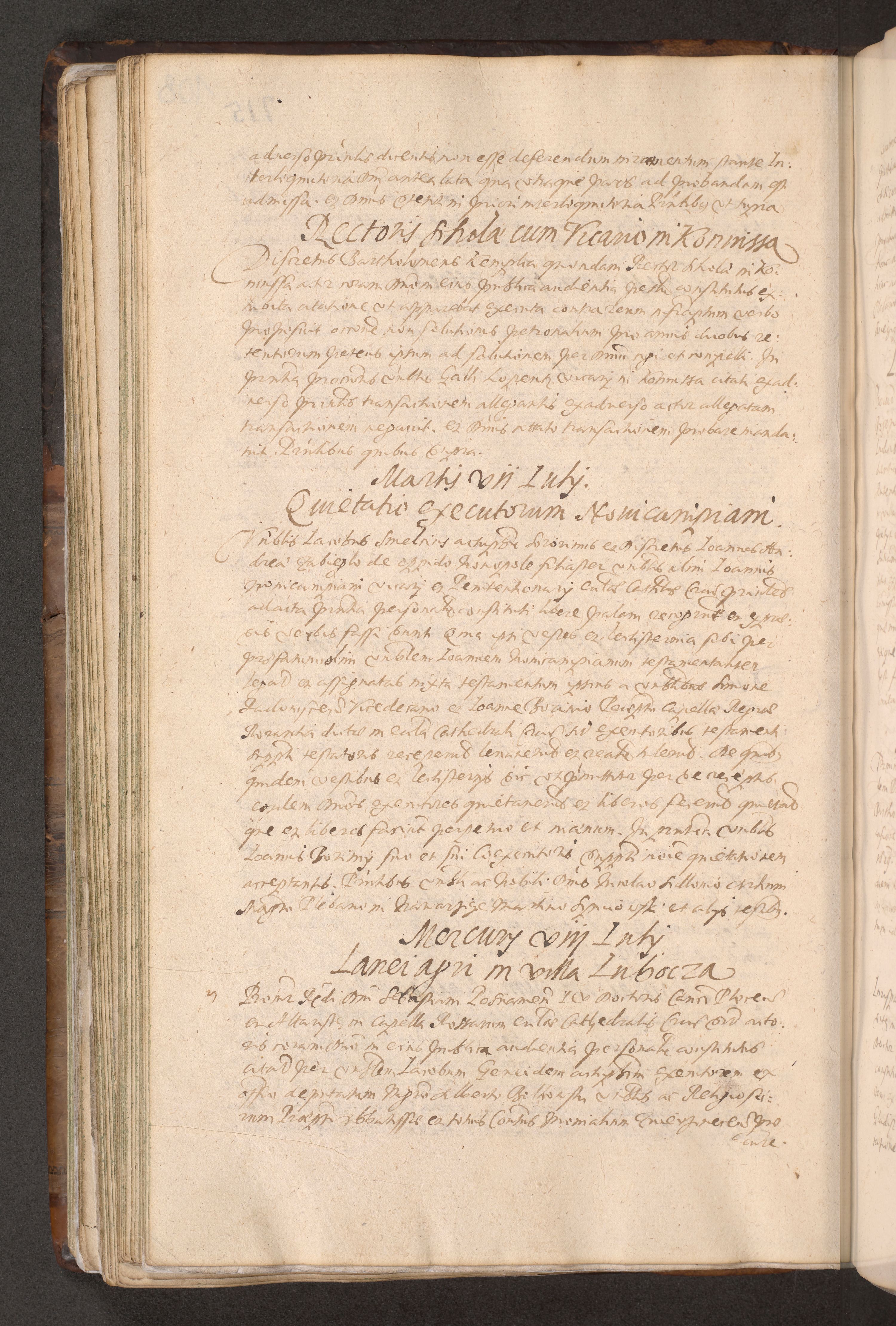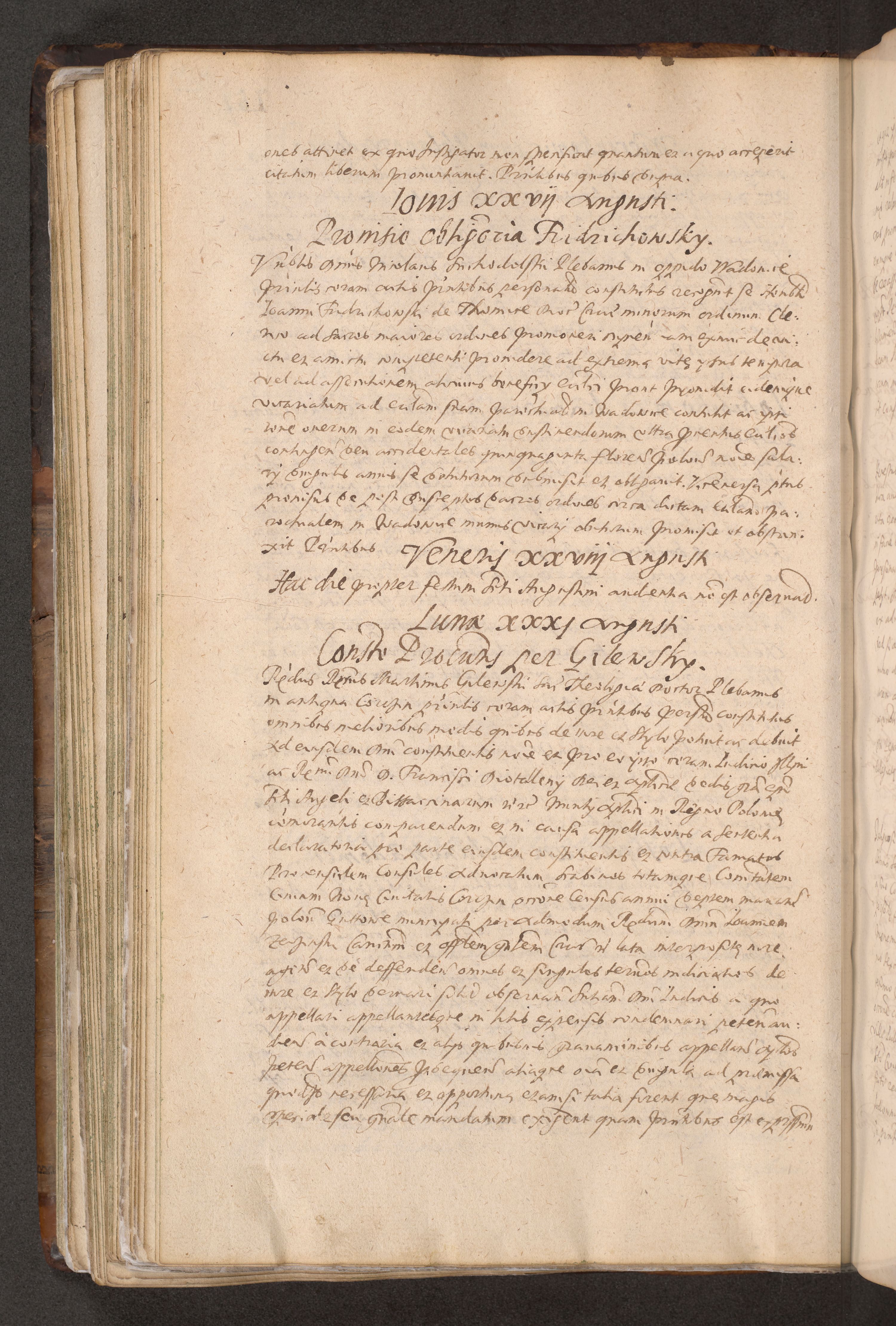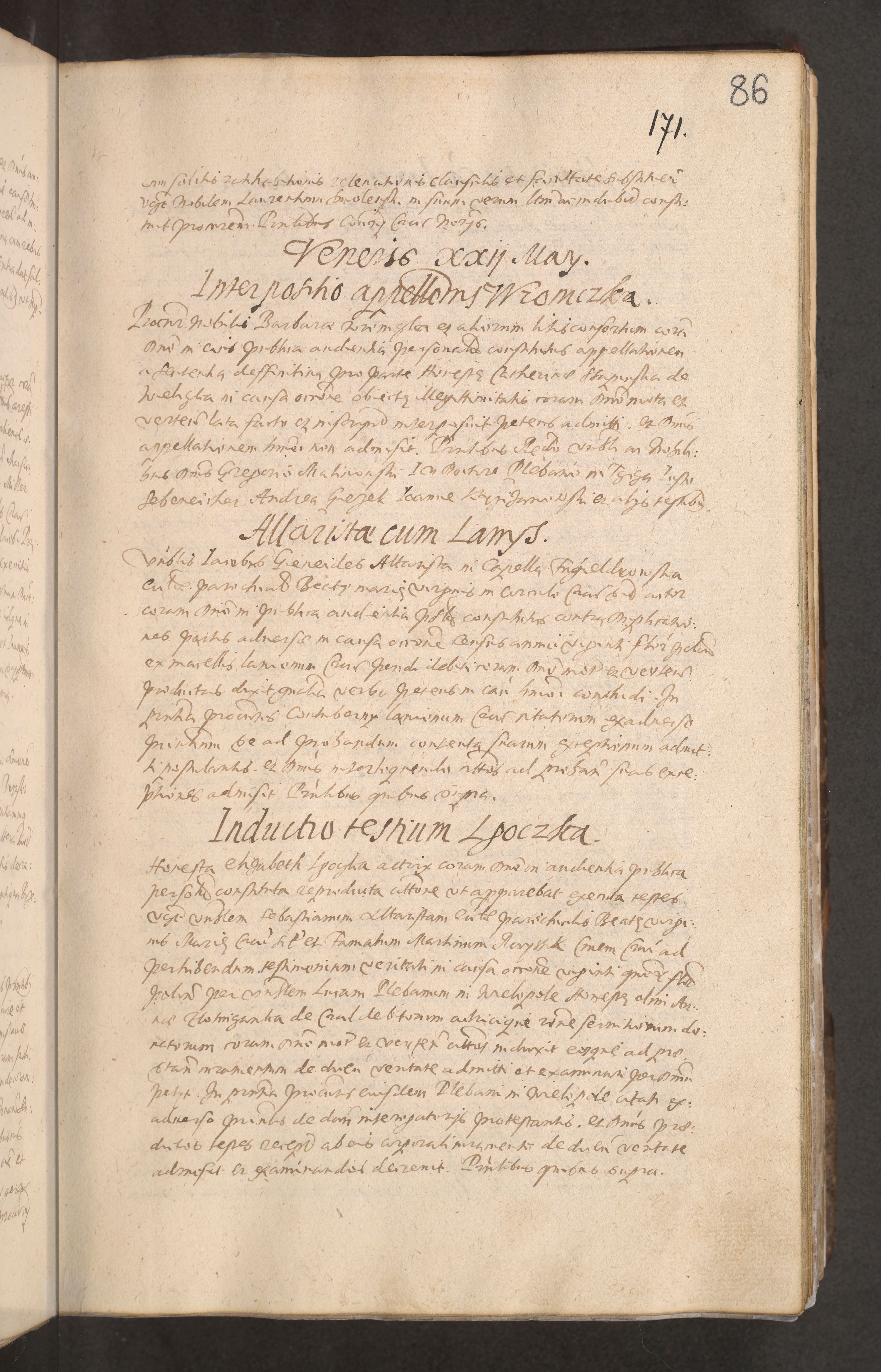 Acta actorum causarum obligationum institutionum decretorum constitutionum quietationum resignationum cissionum et atiaru obsernationum tam indiciariarum quam extra indiciariarum coram Admodum Reverendo Domino Joanne Zerzynski Canonico Vicario in Spiritualibus et Officiali generali Cracoviensis ad Annum Domini Millesimum Sextentissimum Vigesimum Indictione tertia Pontificatus SSmi D. N. D. Pauli Divina pronidentia Papae V. foeliciter moderni anno ipsins subfelici regimine Diocesis Cracoviensis Illustrissimi ac Reverendissimi D. N. D. Martini Szyszkowski Deigratia Episcopus Cracoviensis Ducis Severiensis in continuantur.