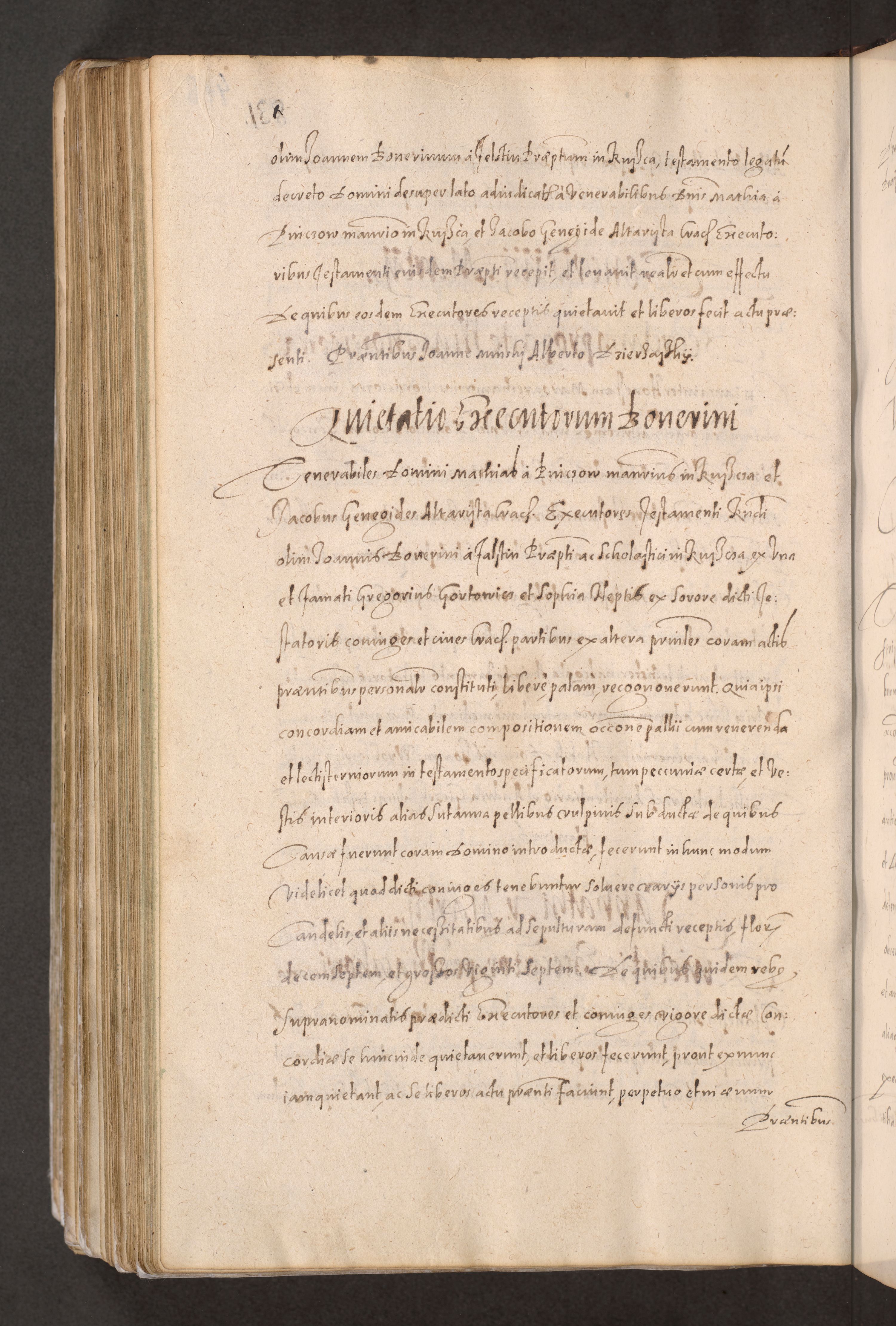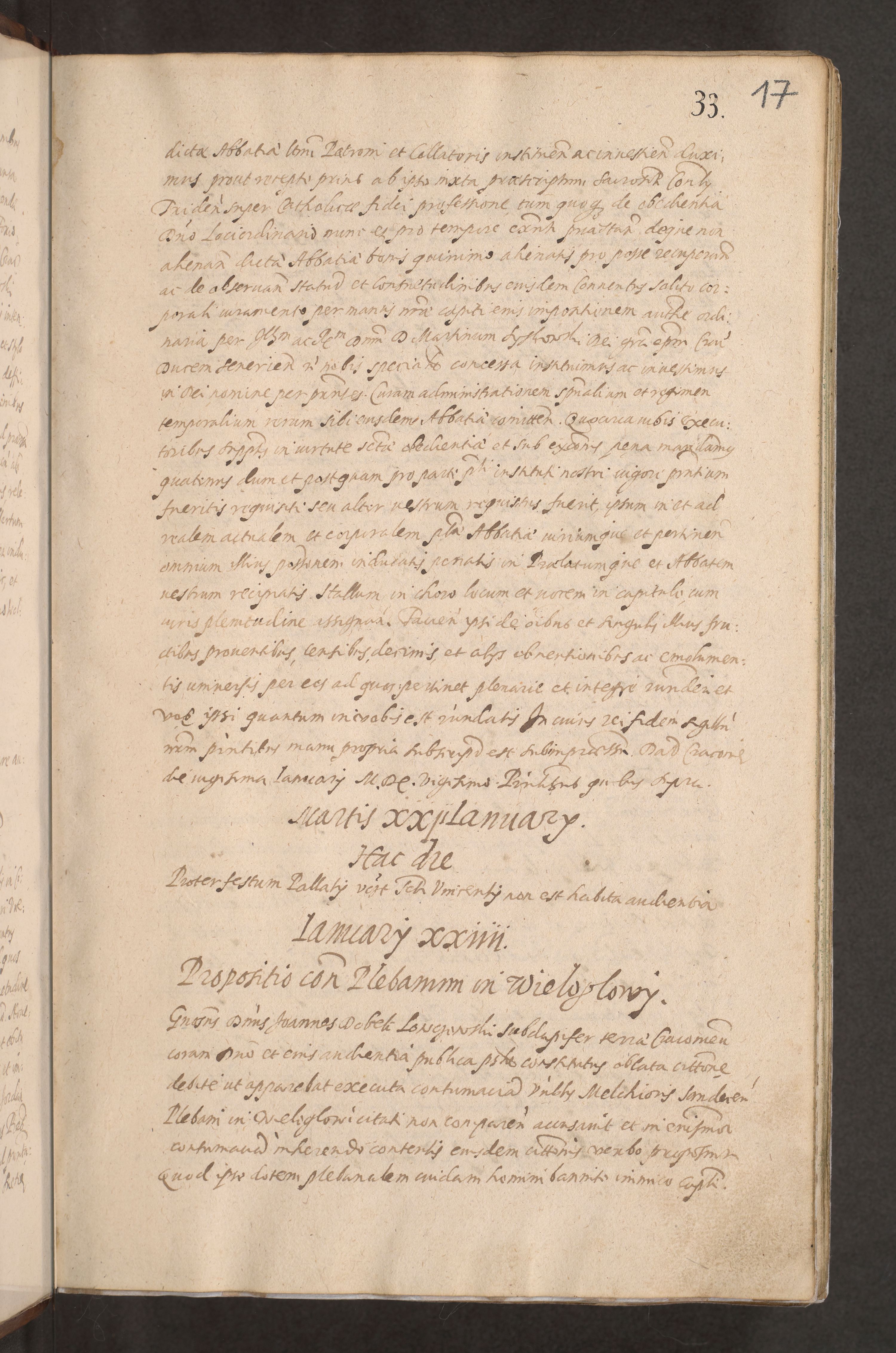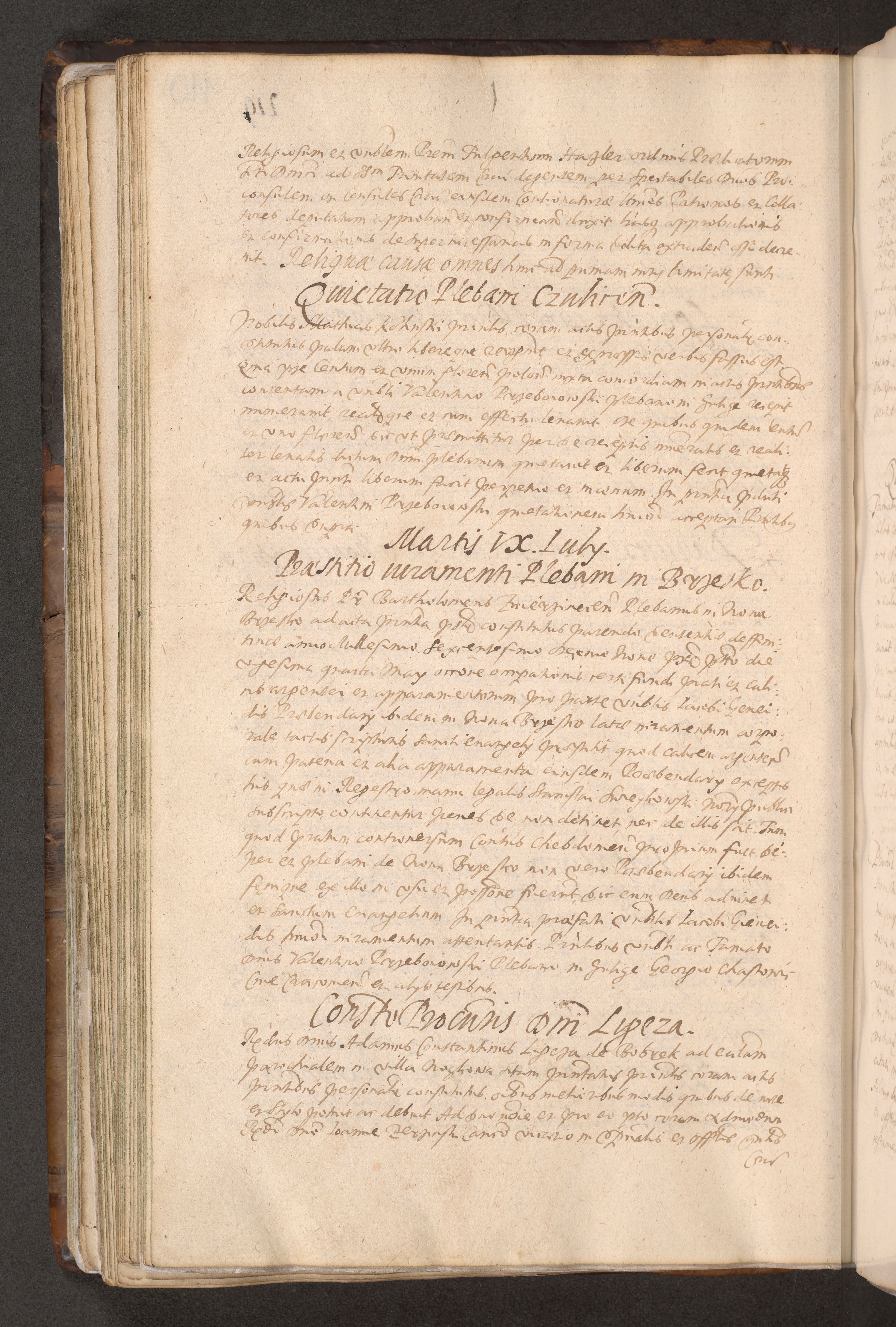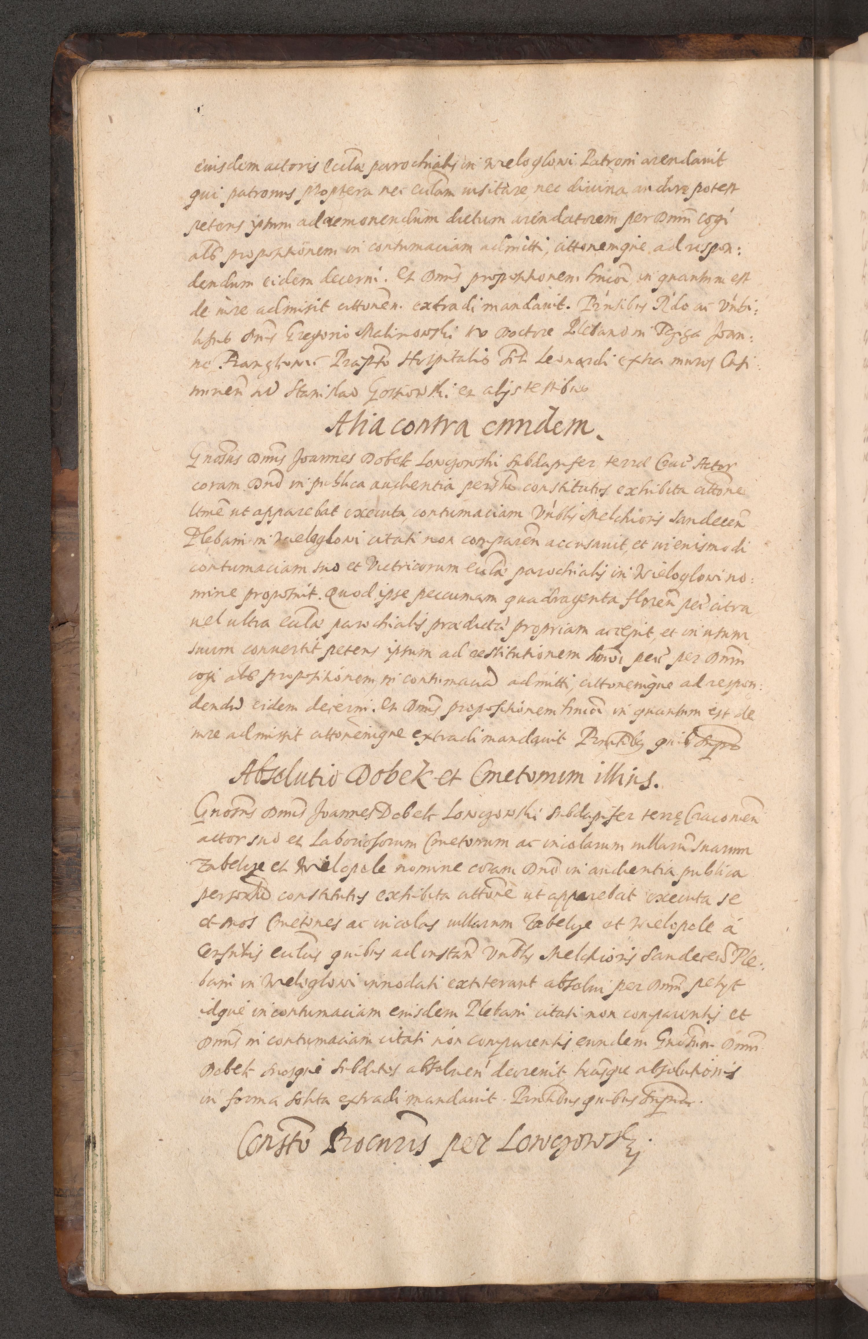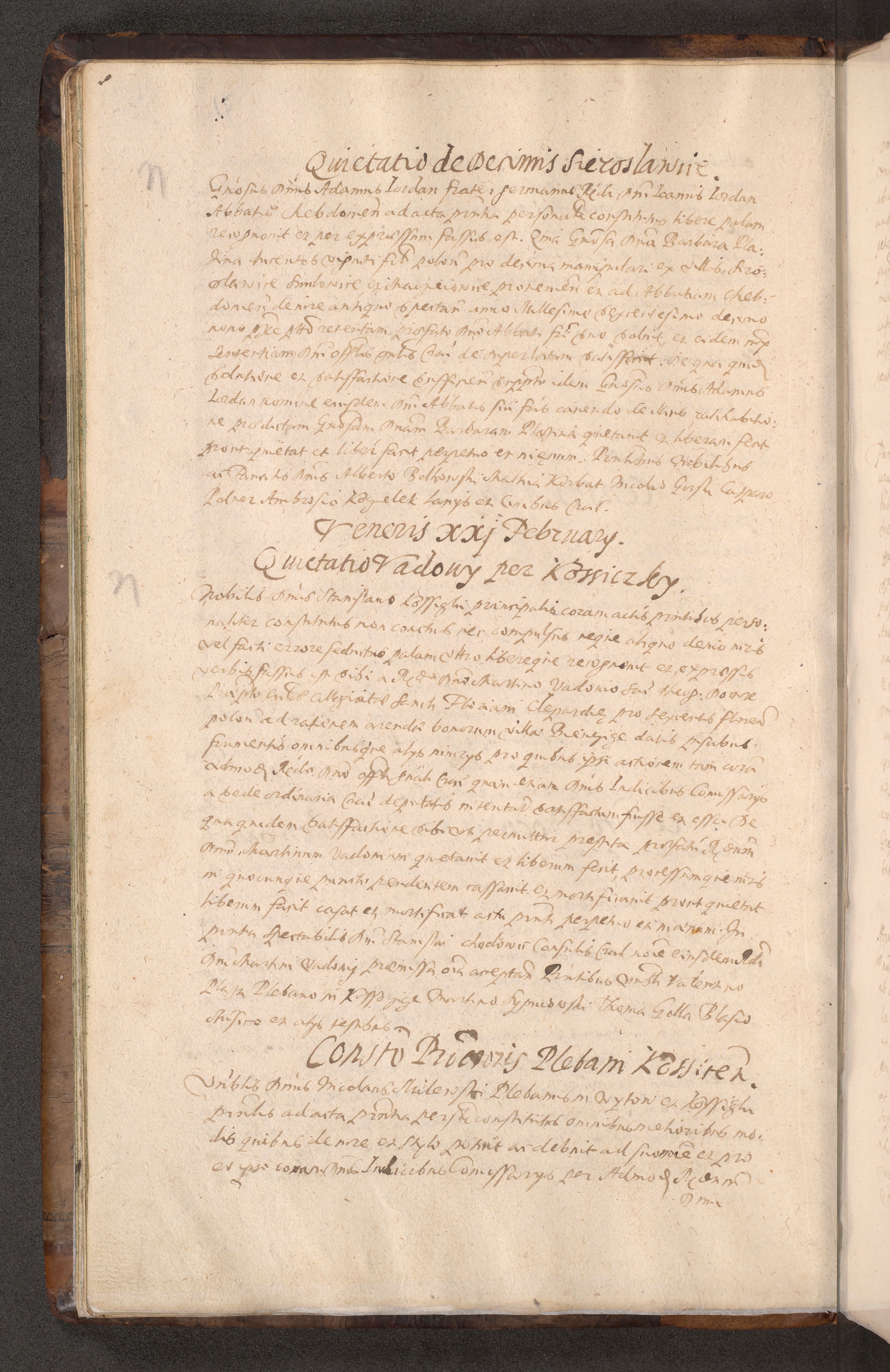 Acta actorum causarum obligationum institutionum decretorum constitutionum quietationum resignationum cissionum et atiaru obsernationum tam indiciariarum quam extra indiciariarum coram Admodum Reverendo Domino Joanne Zerzynski Canonico Vicario in Spiritualibus et Officiali generali Cracoviensis ad Annum Domini Millesimum Sextentissimum Vigesimum Indictione tertia Pontificatus SSmi D. N. D. Pauli Divina pronidentia Papae V. foeliciter moderni anno ipsins subfelici regimine Diocesis Cracoviensis Illustrissimi ac Reverendissimi D. N. D. Martini Szyszkowski Deigratia Episcopus Cracoviensis Ducis Severiensis in continuantur.