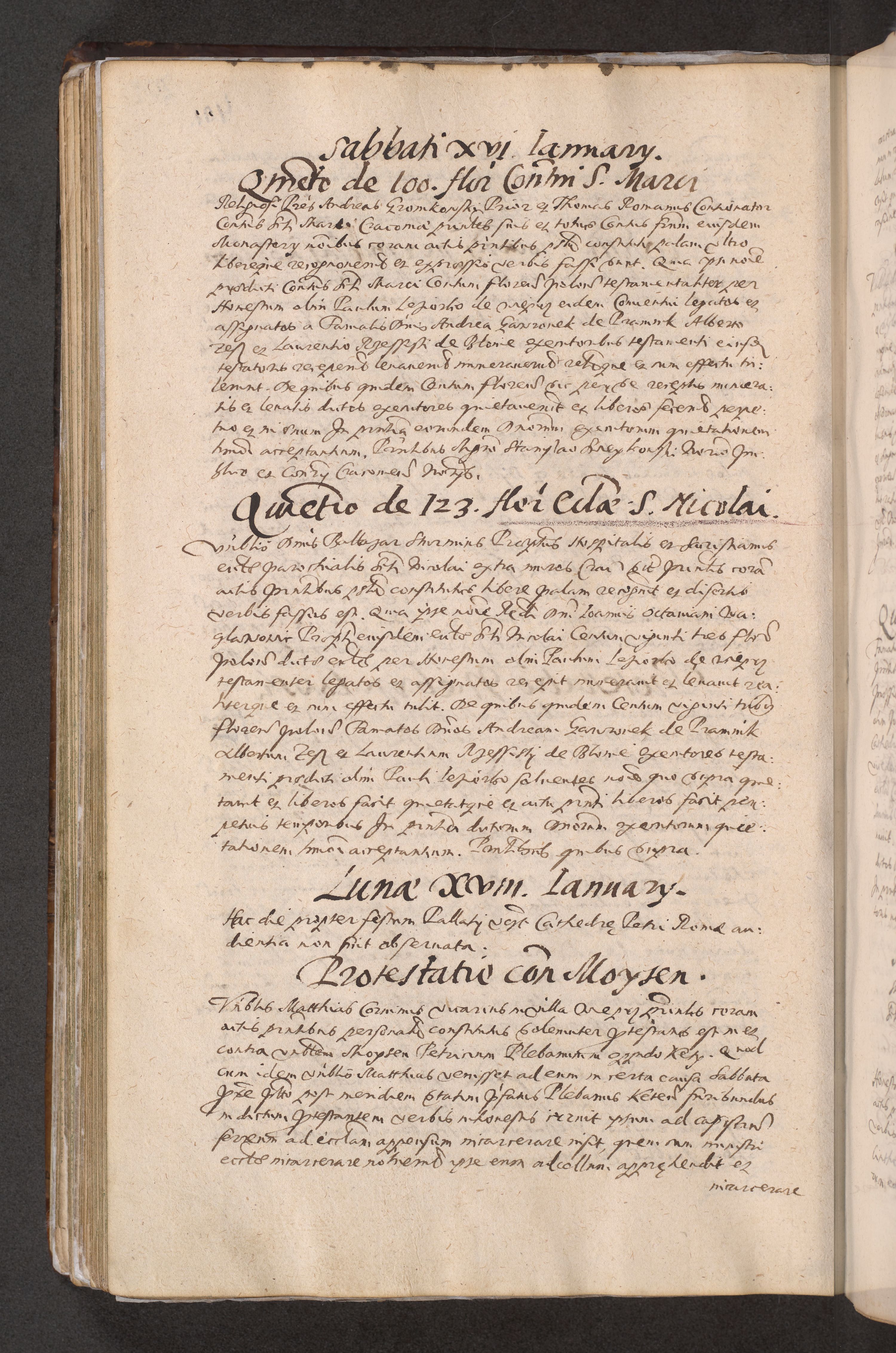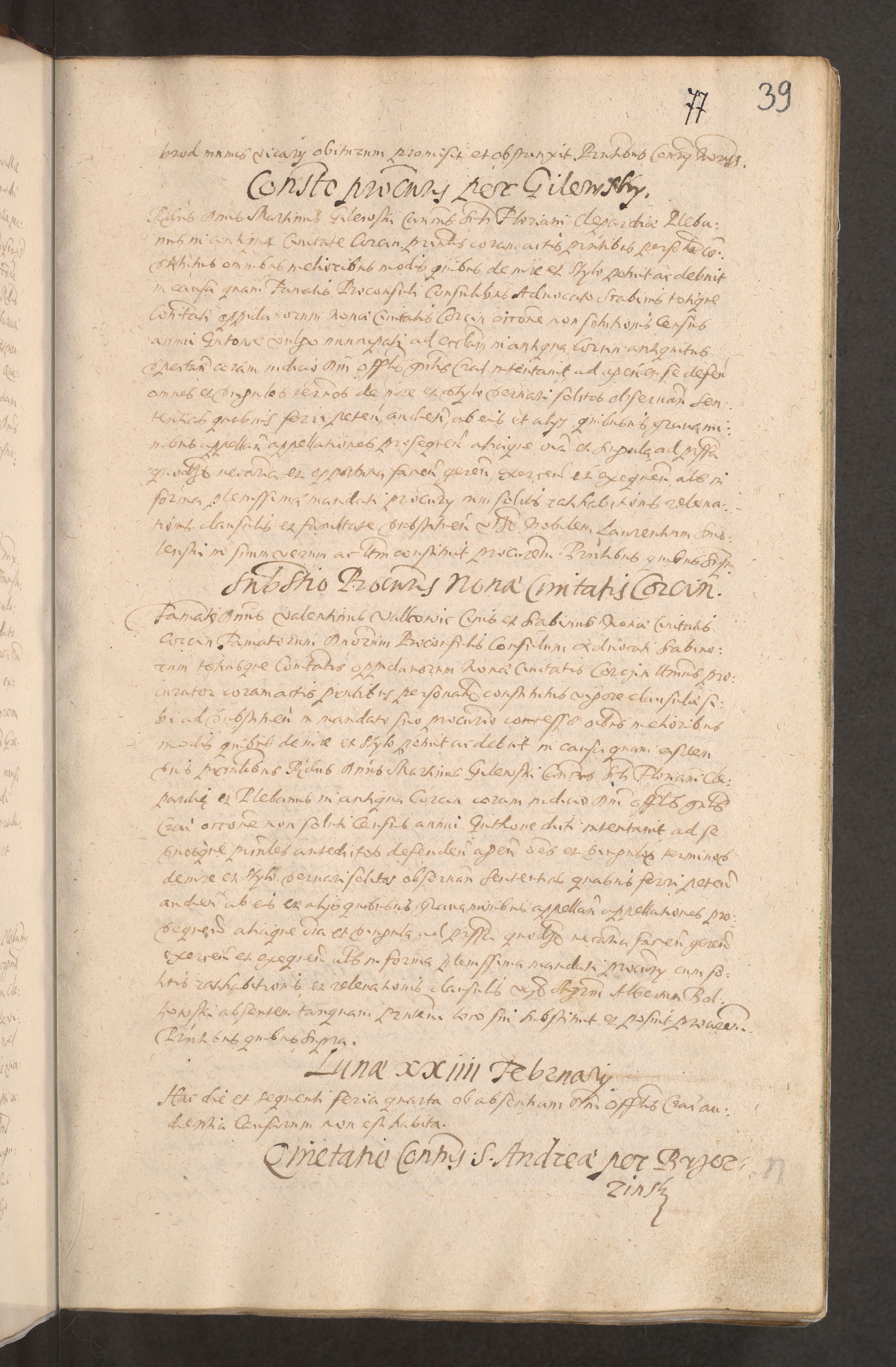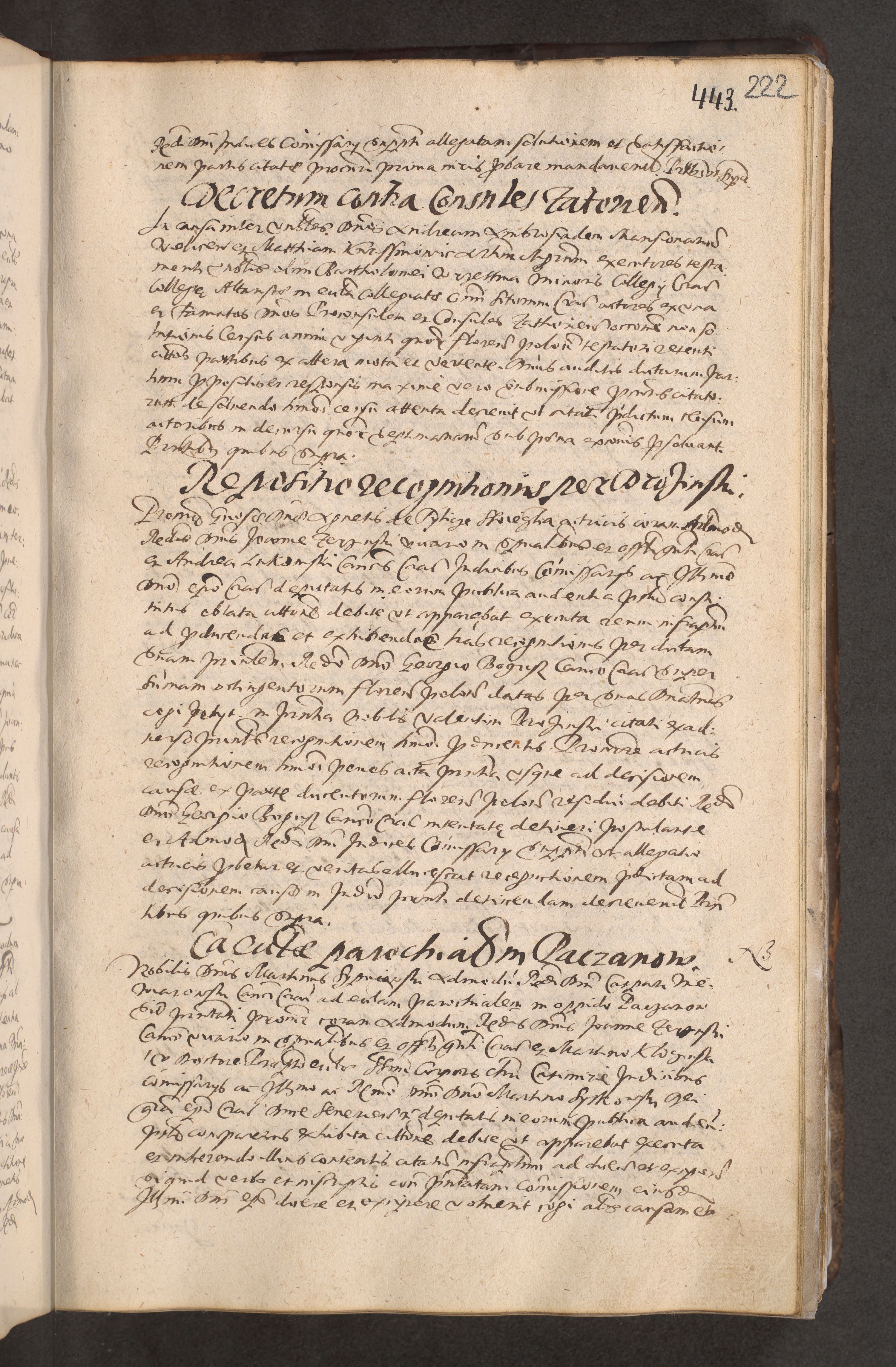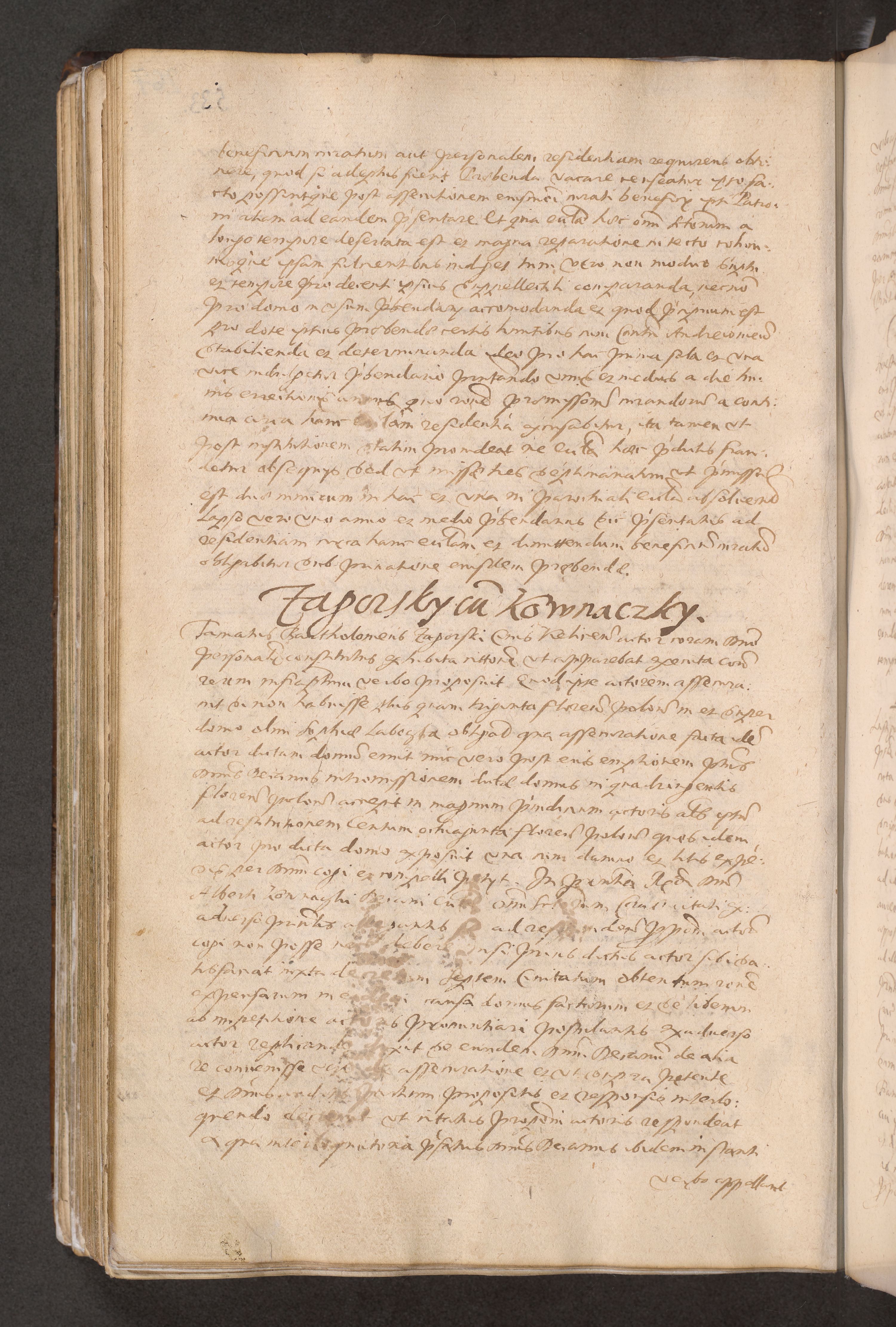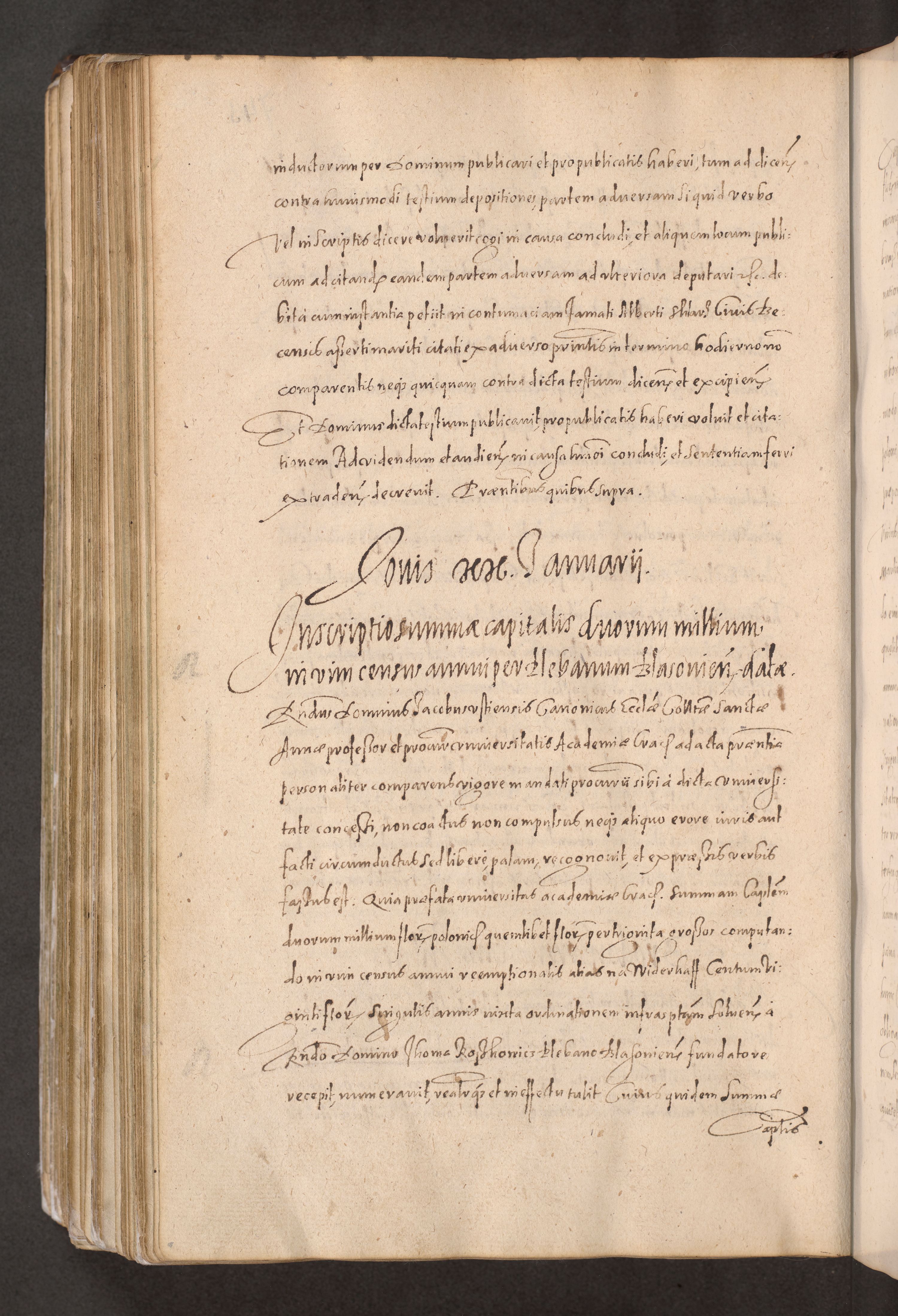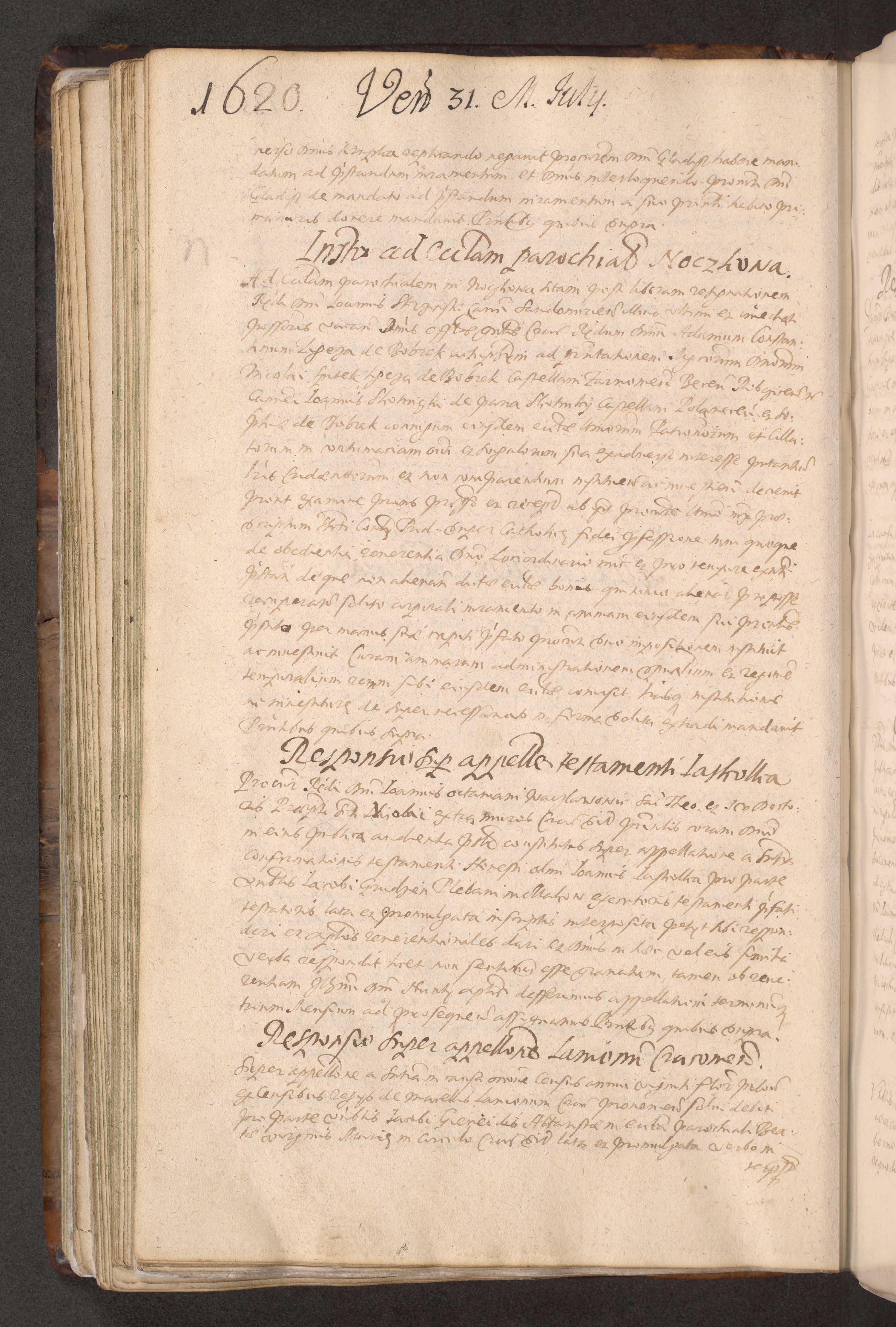 Acta actorum causarum obligationum institutionum decretorum constitutionum quietationum resignationum cissionum et atiaru obsernationum tam indiciariarum quam extra indiciariarum coram Admodum Reverendo Domino Joanne Zerzynski Canonico Vicario in Spiritualibus et Officiali generali Cracoviensis ad Annum Domini Millesimum Sextentissimum Vigesimum Indictione tertia Pontificatus SSmi D. N. D. Pauli Divina pronidentia Papae V. foeliciter moderni anno ipsins subfelici regimine Diocesis Cracoviensis Illustrissimi ac Reverendissimi D. N. D. Martini Szyszkowski Deigratia Episcopus Cracoviensis Ducis Severiensis in continuantur.