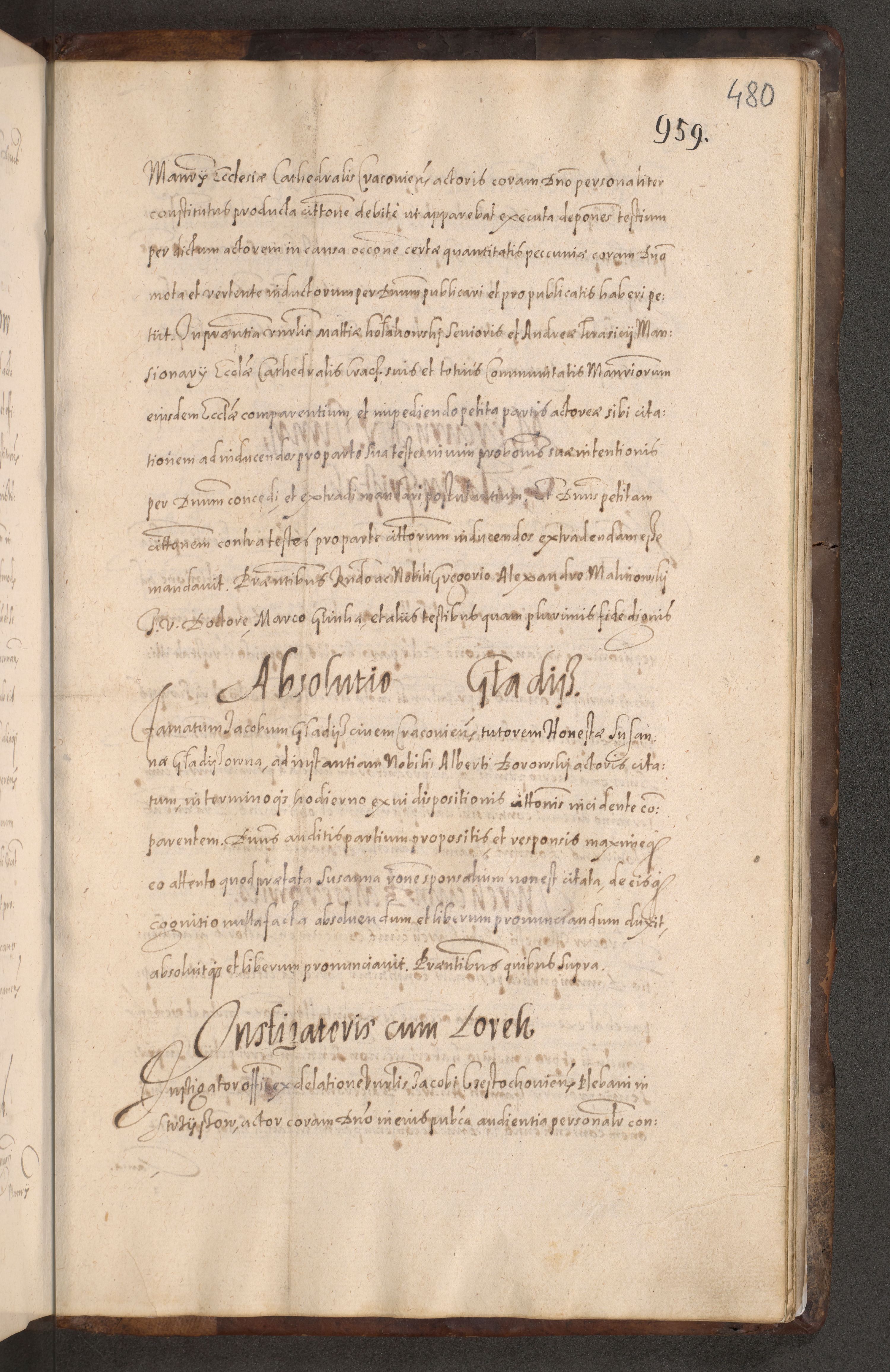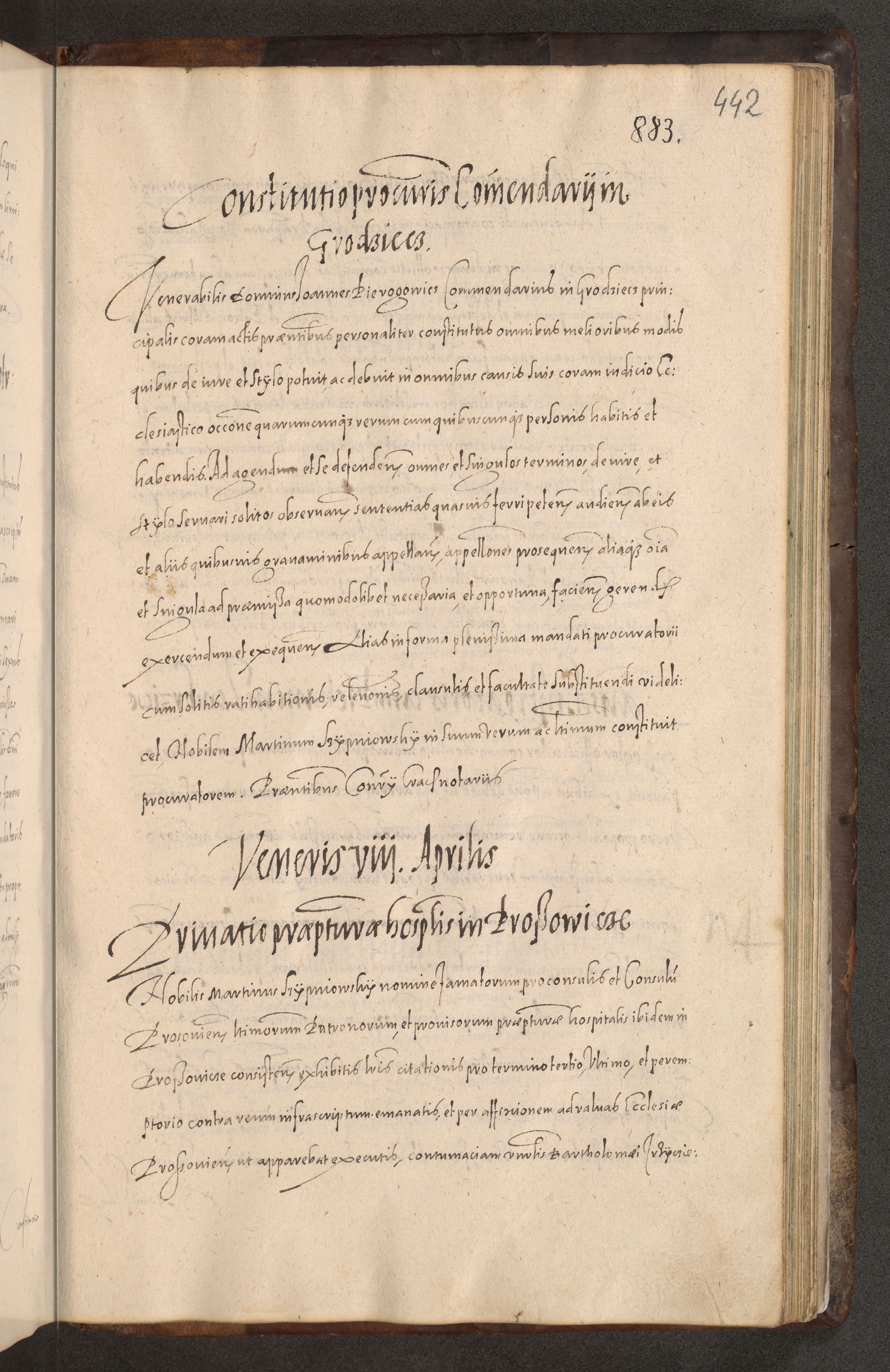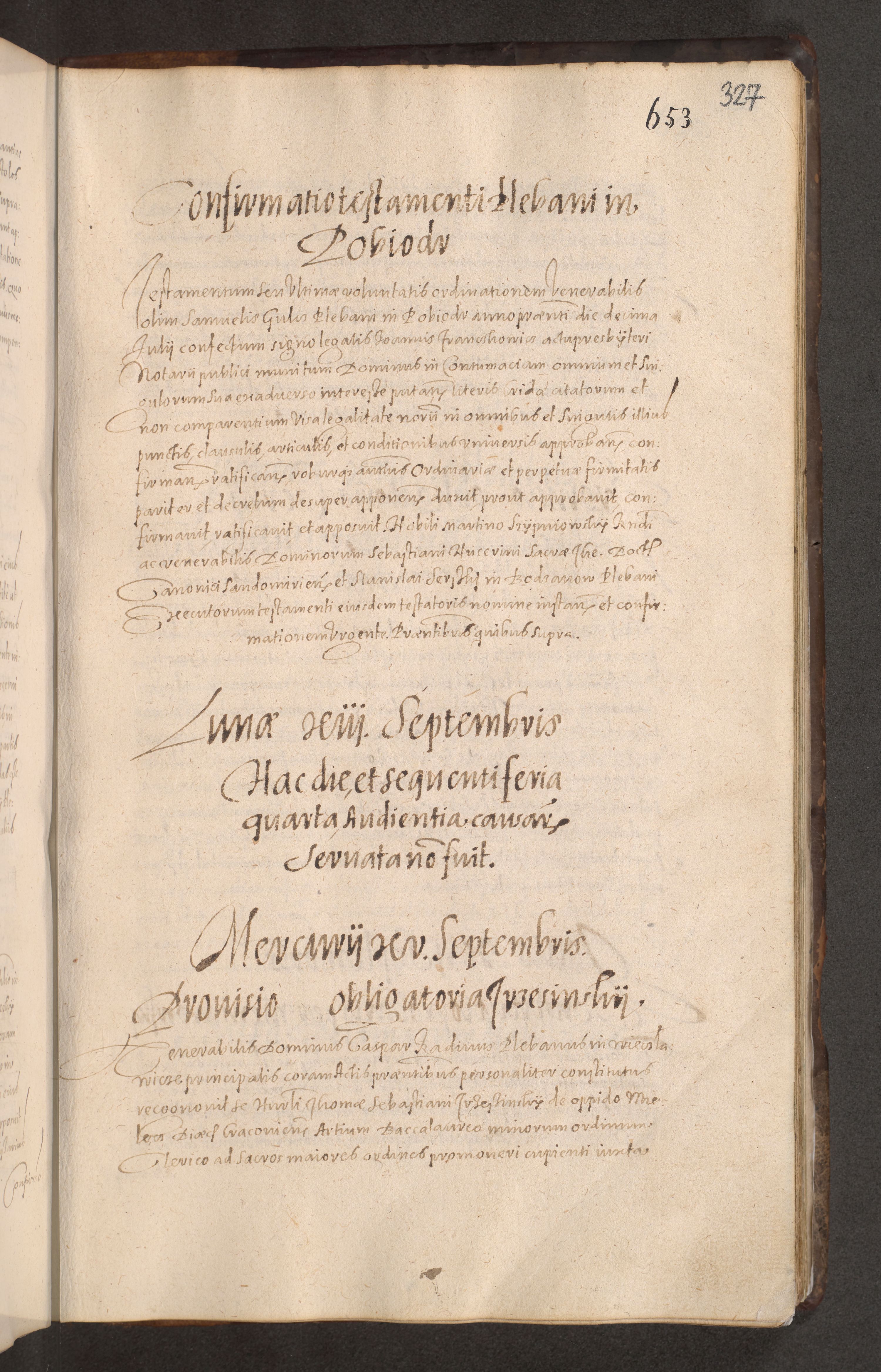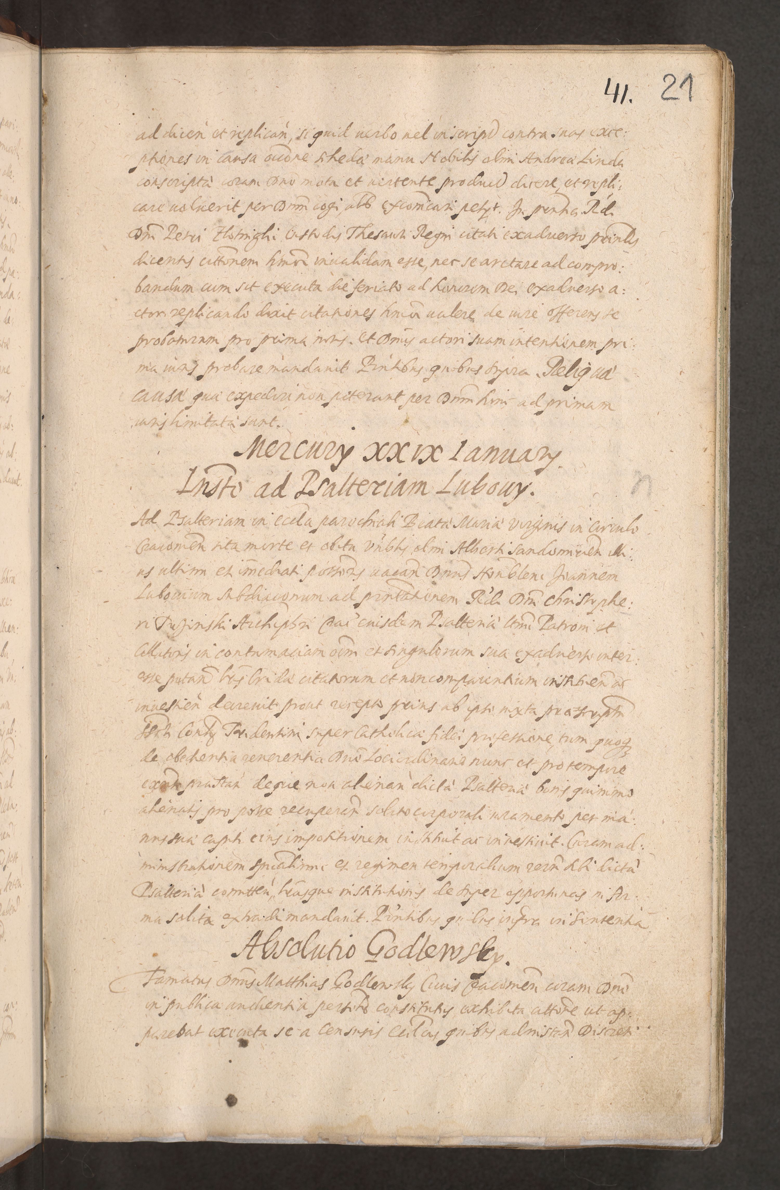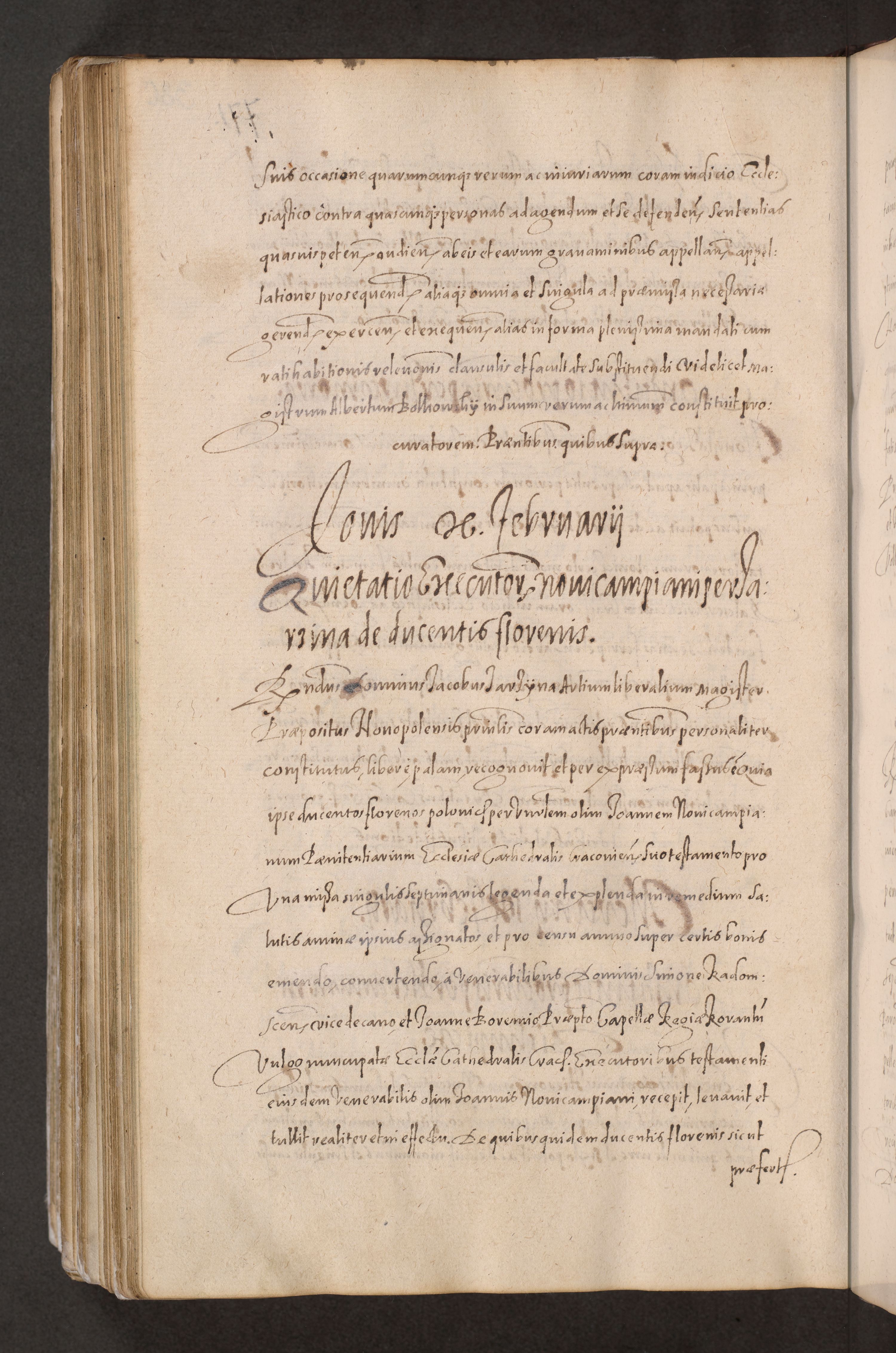 Acta actorum causarum obligationum institutionum decretorum constitutionum quietationum resignationum cissionum et atiaru obsernationum tam indiciariarum quam extra indiciariarum coram Admodum Reverendo Domino Joanne Zerzynski Canonico Vicario in Spiritualibus et Officiali generali Cracoviensis ad Annum Domini Millesimum Sextentissimum Vigesimum Indictione tertia Pontificatus SSmi D. N. D. Pauli Divina pronidentia Papae V. foeliciter moderni anno ipsins subfelici regimine Diocesis Cracoviensis Illustrissimi ac Reverendissimi D. N. D. Martini Szyszkowski Deigratia Episcopus Cracoviensis Ducis Severiensis in continuantur.
