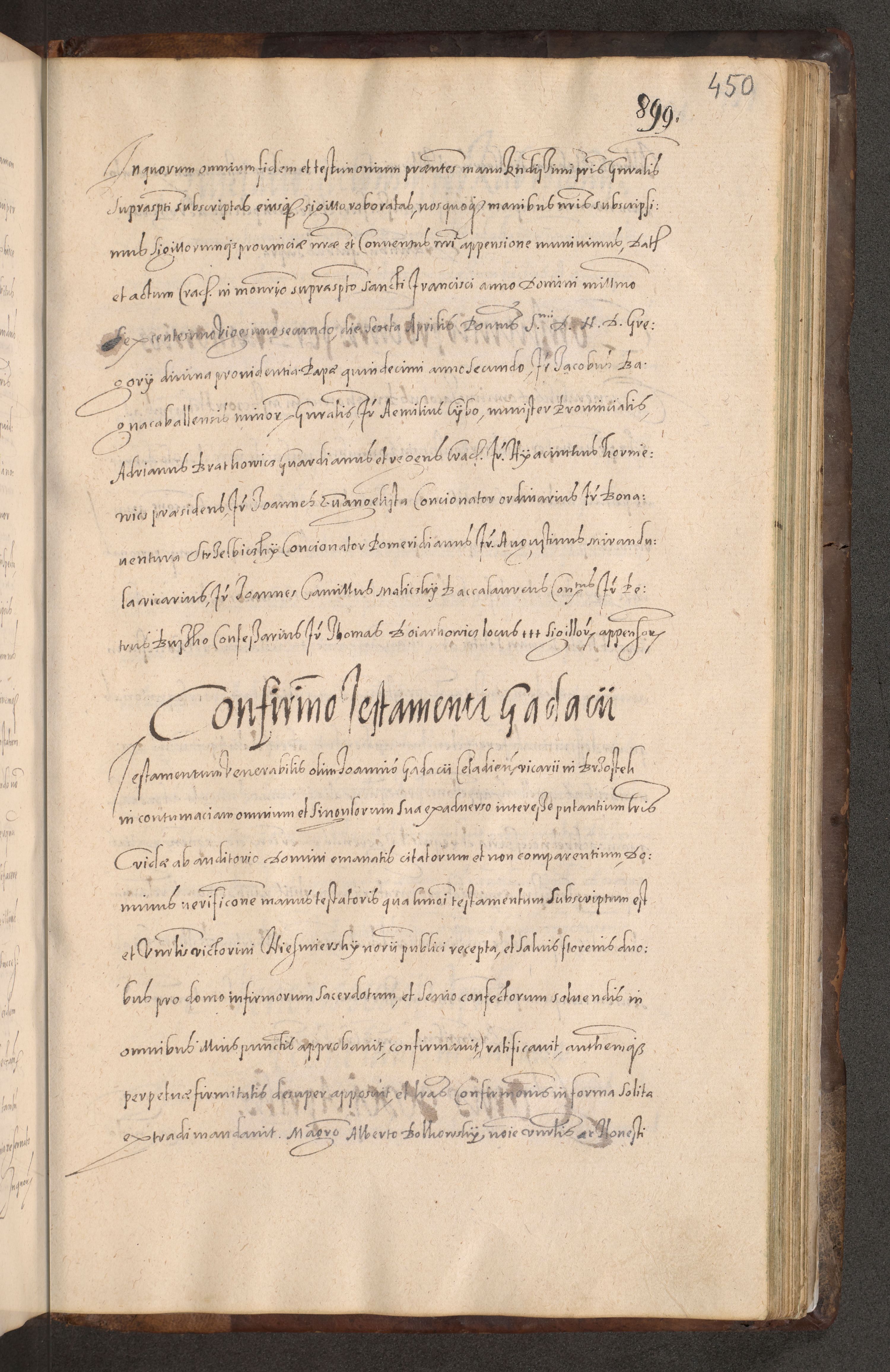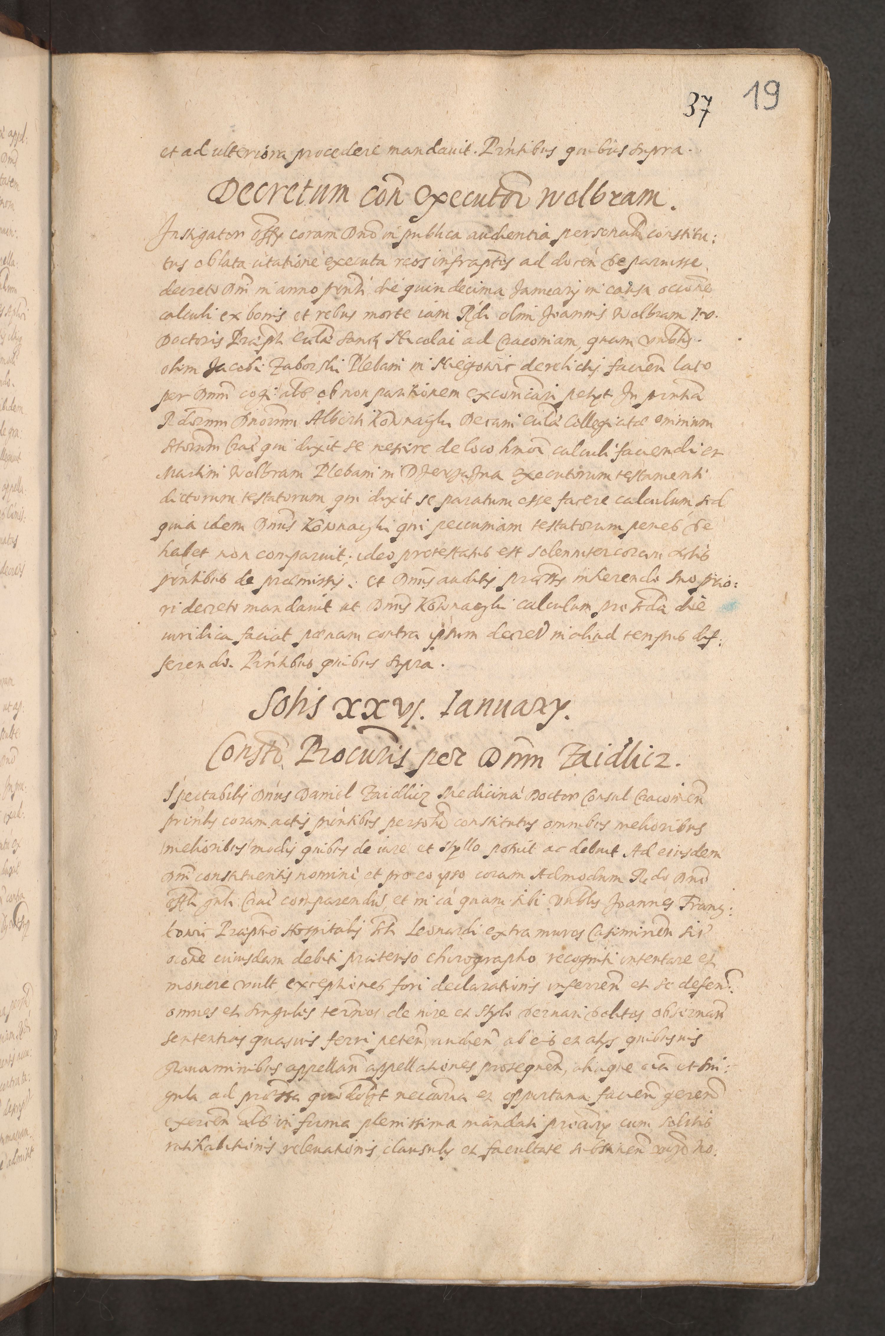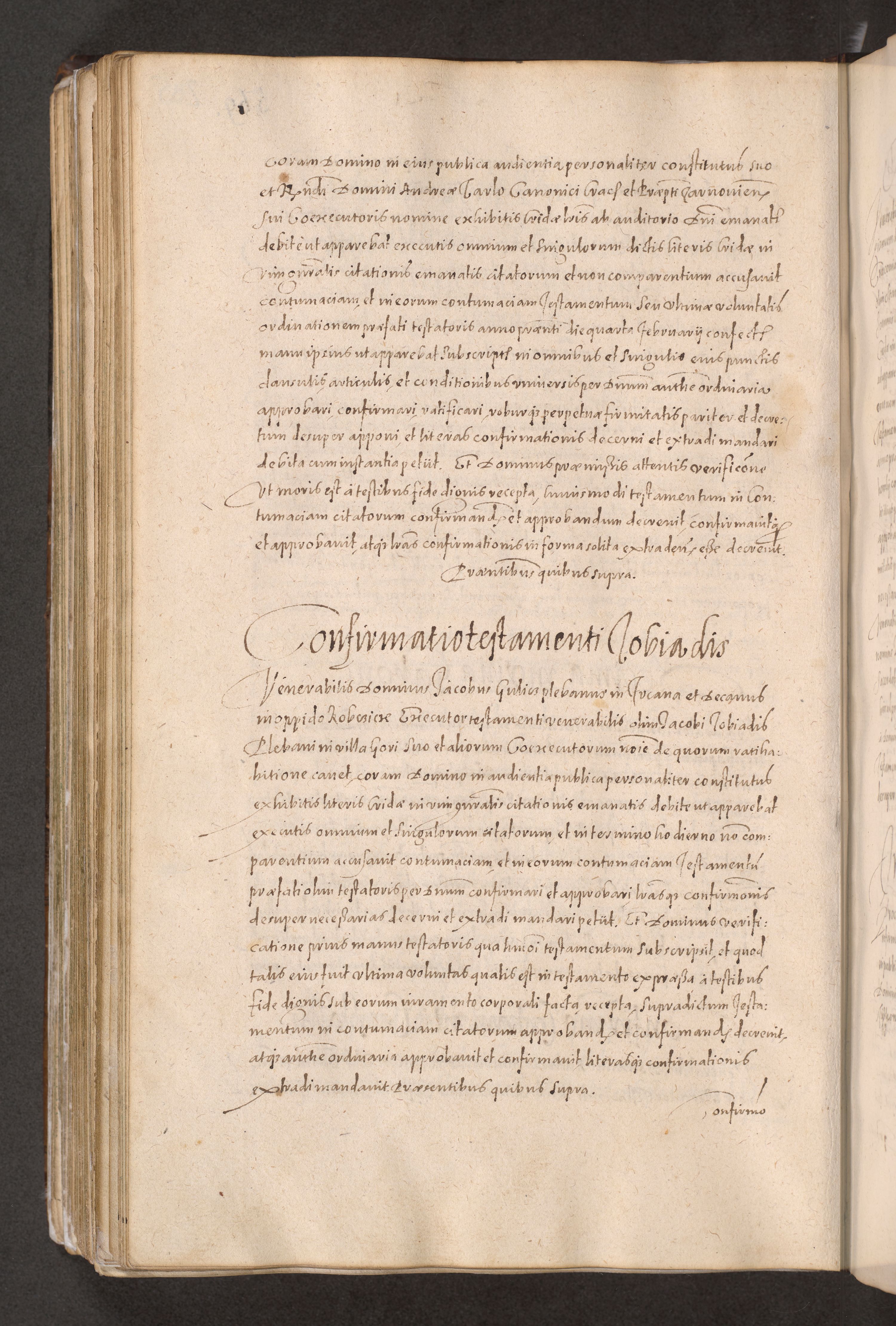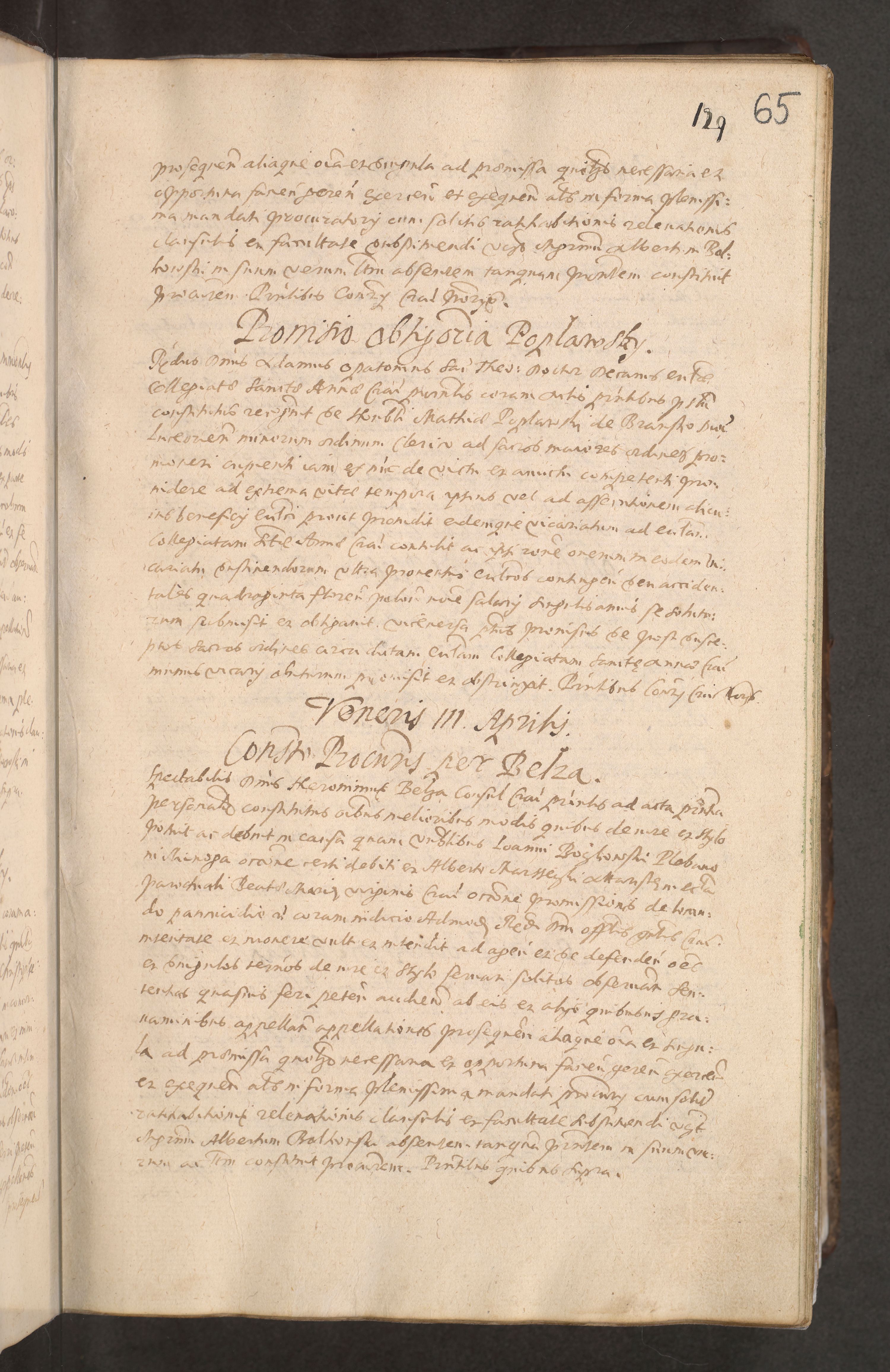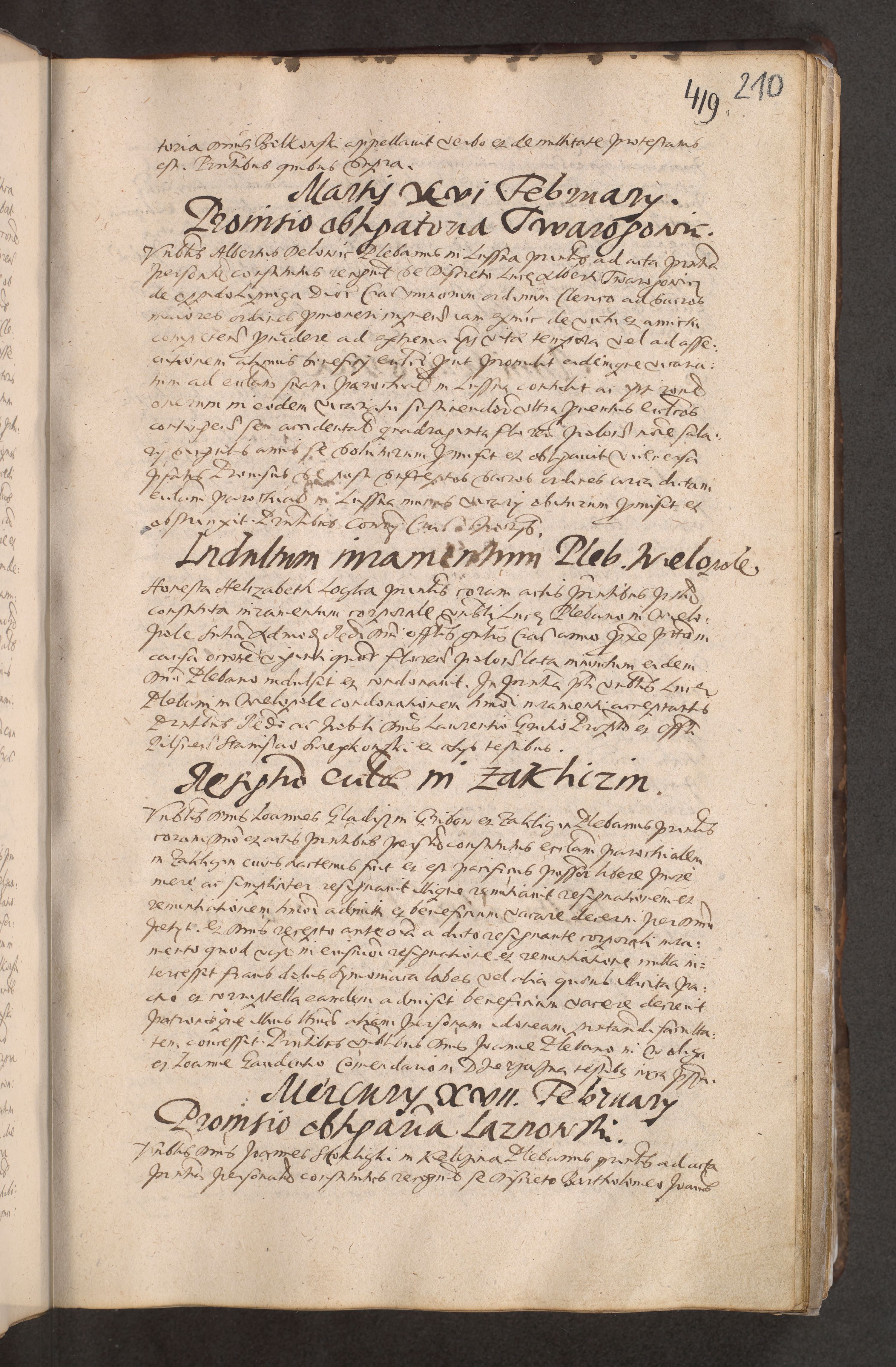Acta actorum causarum obligationum institutionum decretorum constitutionum quietationum resignationum cissionum et atiaru obsernationum tam indiciariarum quam extra indiciariarum coram Admodum Reverendo Domino Joanne Zerzynski Canonico Vicario in Spiritualibus et Officiali generali Cracoviensis ad Annum Domini Millesimum Sextentissimum Vigesimum Indictione tertia Pontificatus SSmi D. N. D. Pauli Divina pronidentia Papae V. foeliciter moderni anno ipsins subfelici regimine Diocesis Cracoviensis Illustrissimi ac Reverendissimi D. N. D. Martini Szyszkowski Deigratia Episcopus Cracoviensis Ducis Severiensis in continuantur.