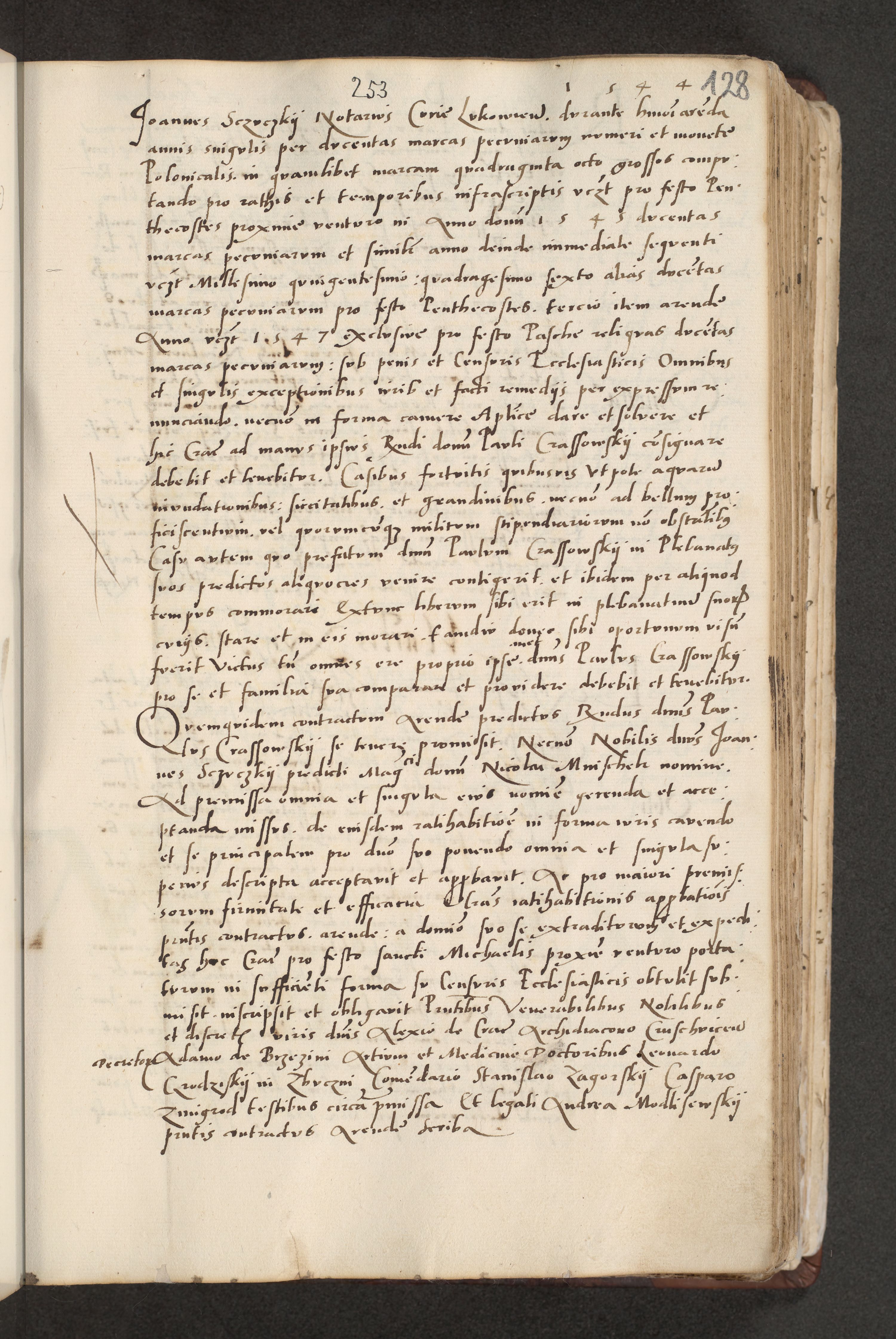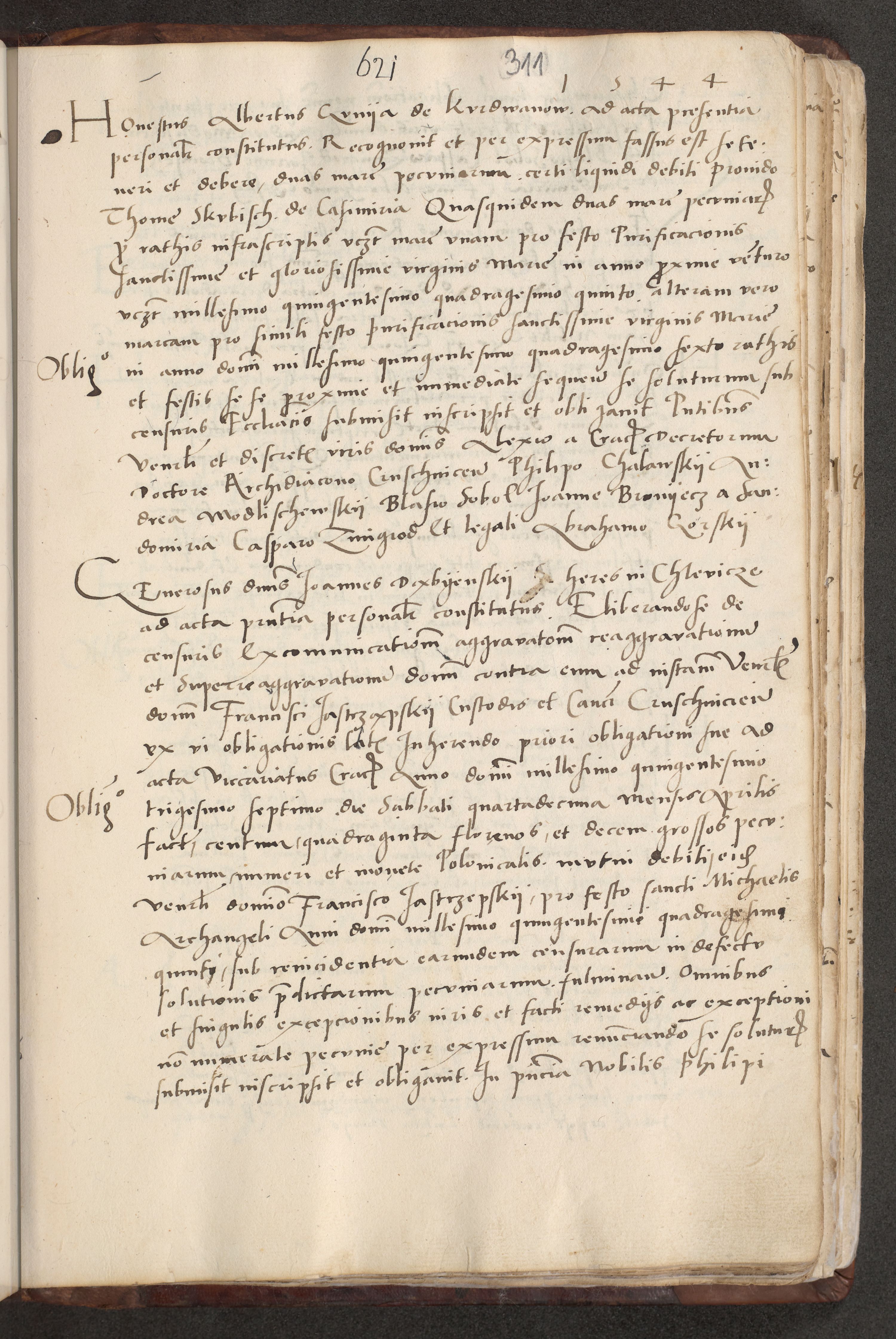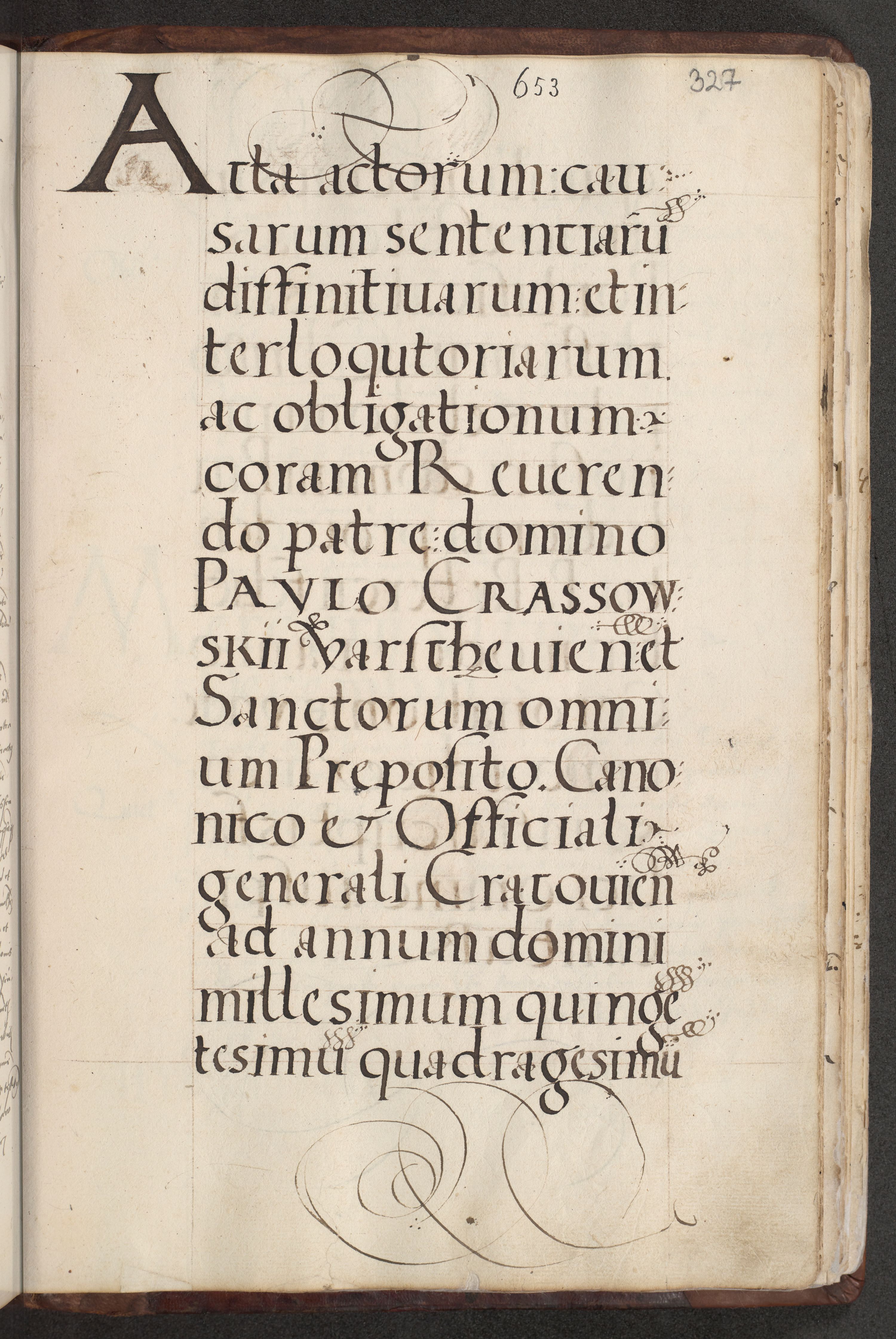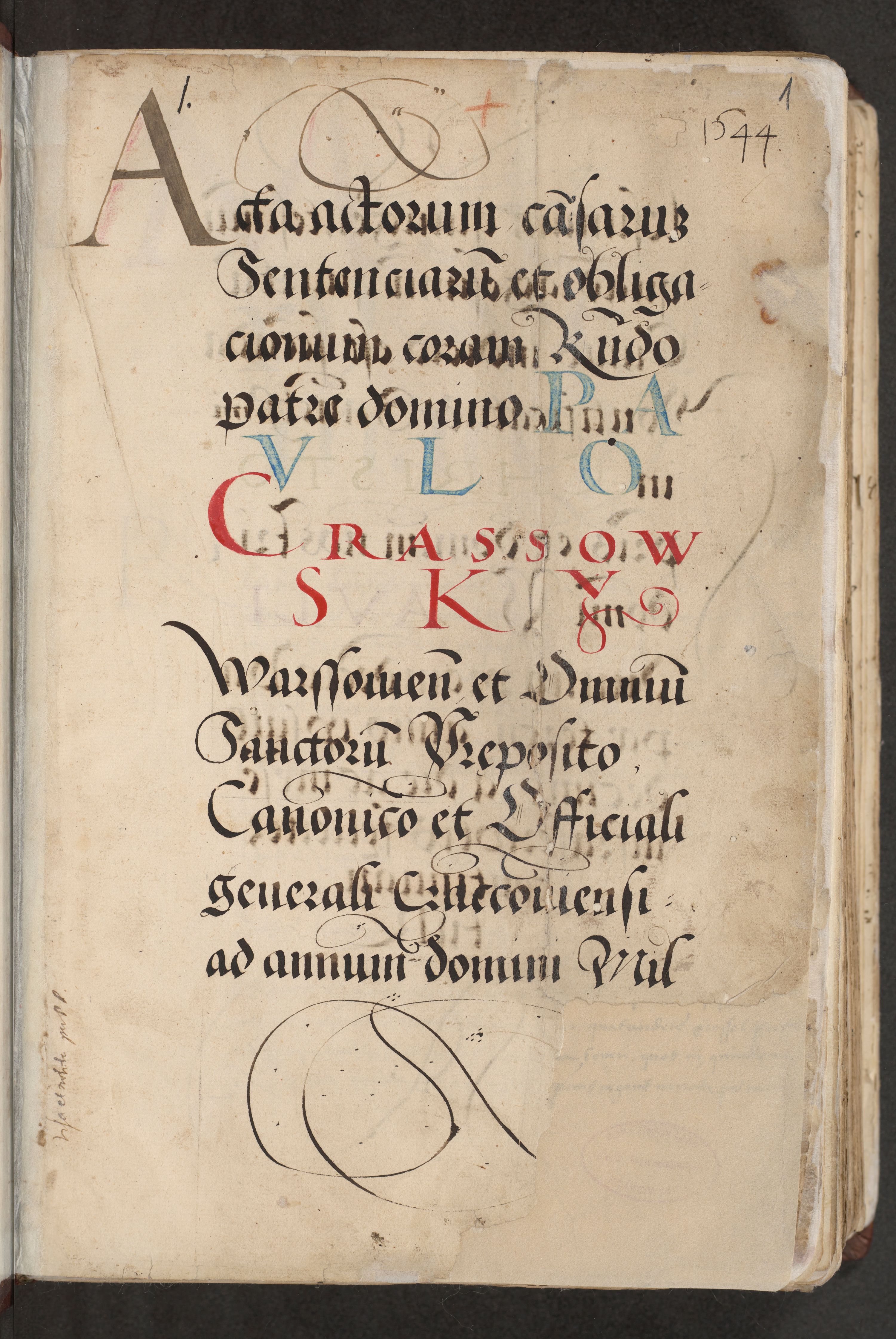 Acta actorum causarum, sentenciarum et obligacionum coram reverendo patre domino Paulo Crassowsky Warssoviensi et Omnium Sanctorum preposito, canonico et officiali generali Cracoviensi ad annum Domini millesimum quingentesimum quadraresimum quatrum, cuius indicio est secunda pontificatus sanctissimi in Christo patris et domini nostri domini Pauli divina providencia pape tercii anno ipsius decimo, a die ac mense infrascriptis feliciter continuantur