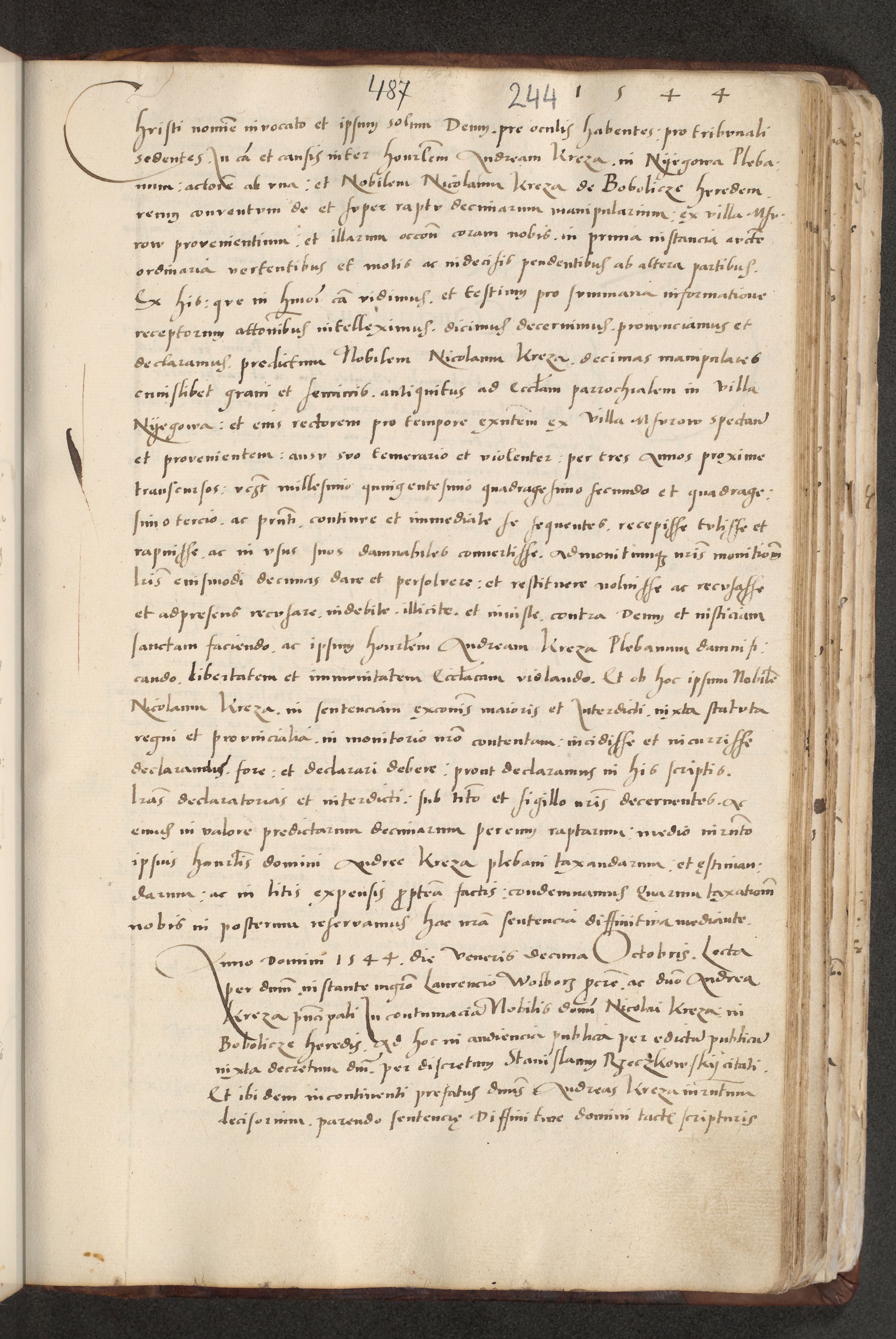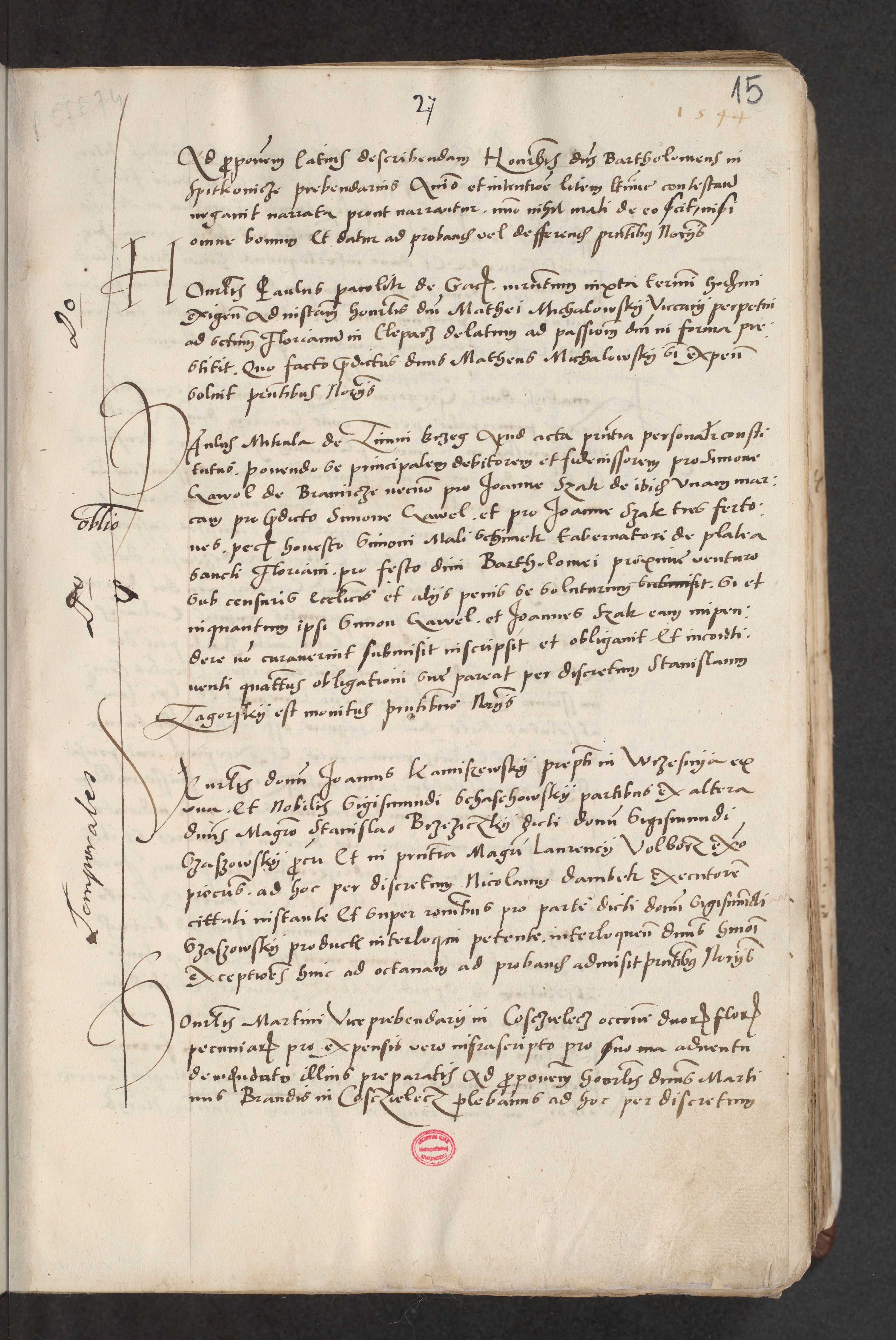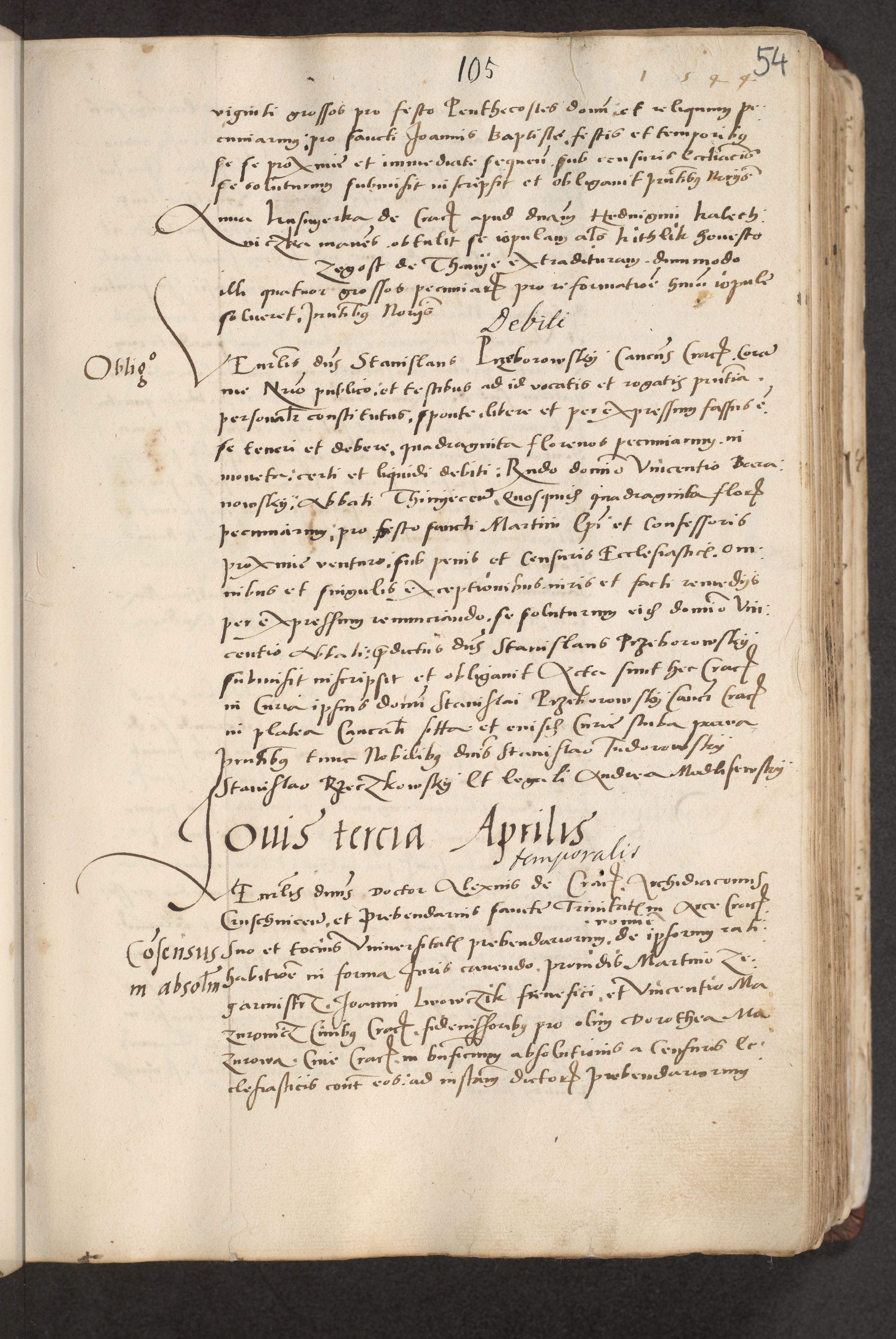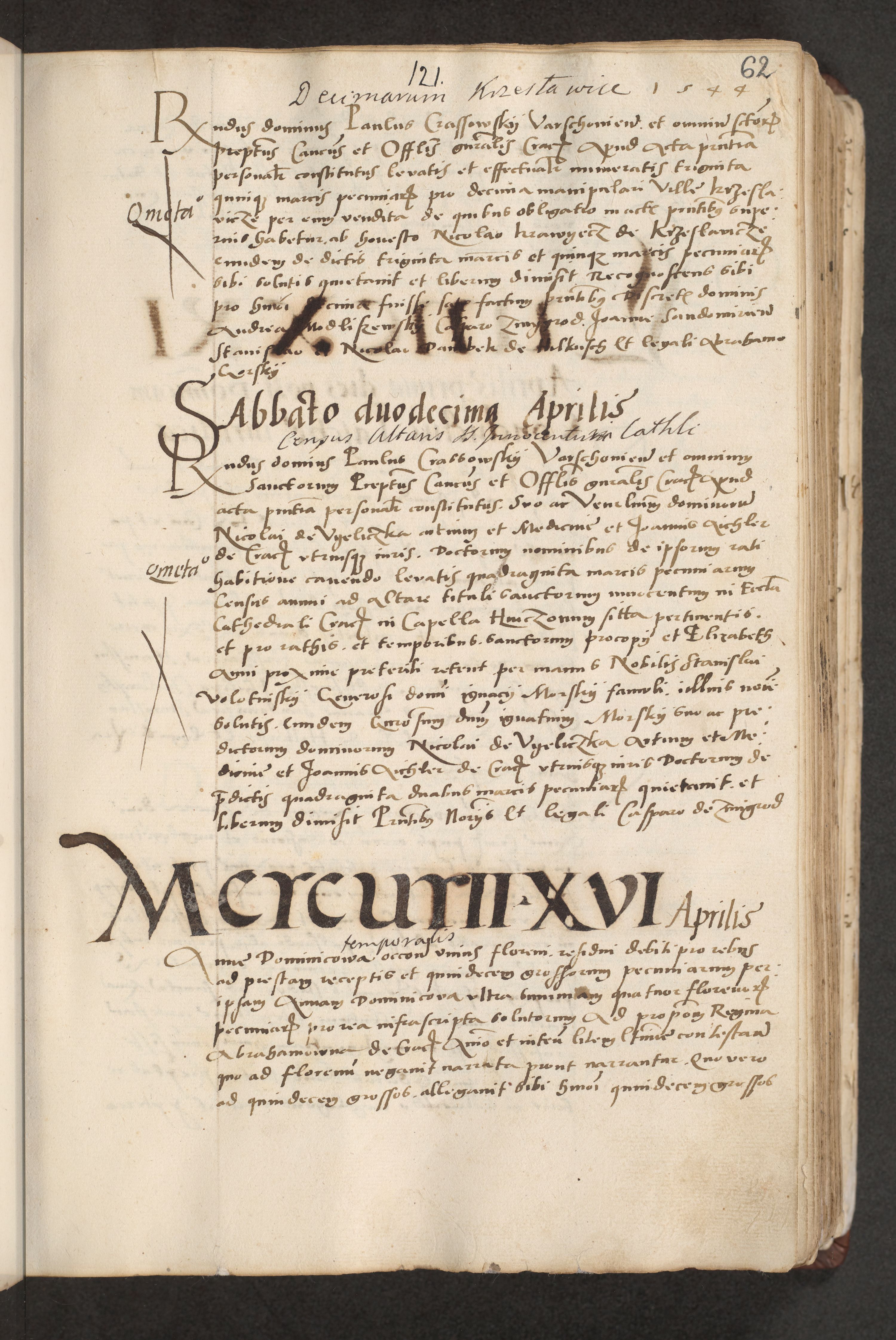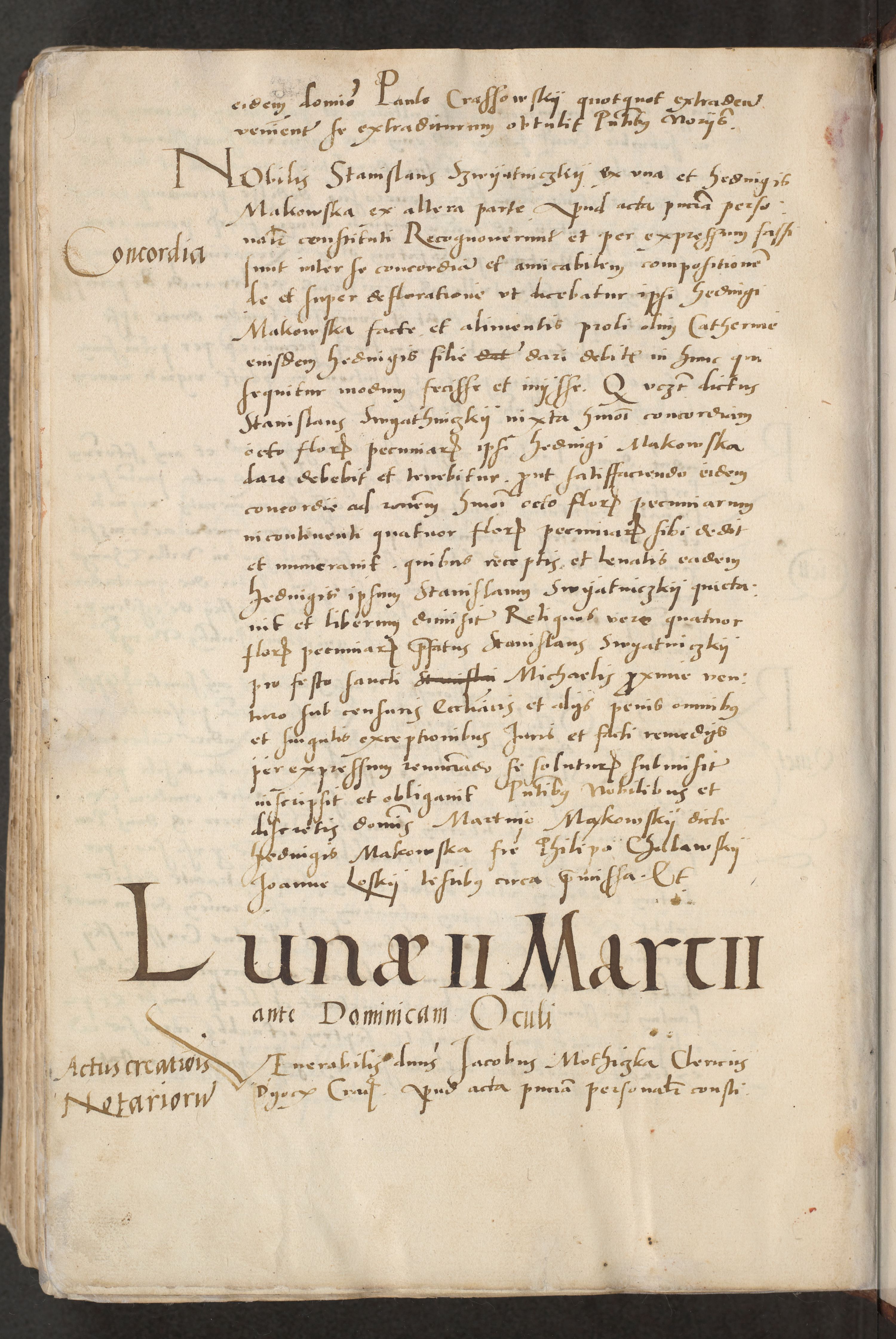 Acta actorum causarum, sentenciarum et obligacionum coram reverendo patre domino Paulo Crassowsky Warssoviensi et Omnium Sanctorum preposito, canonico et officiali generali Cracoviensi ad annum Domini millesimum quingentesimum quadraresimum quatrum, cuius indicio est secunda pontificatus sanctissimi in Christo patris et domini nostri domini Pauli divina providencia pape tercii anno ipsius decimo, a die ac mense infrascriptis feliciter continuantur
