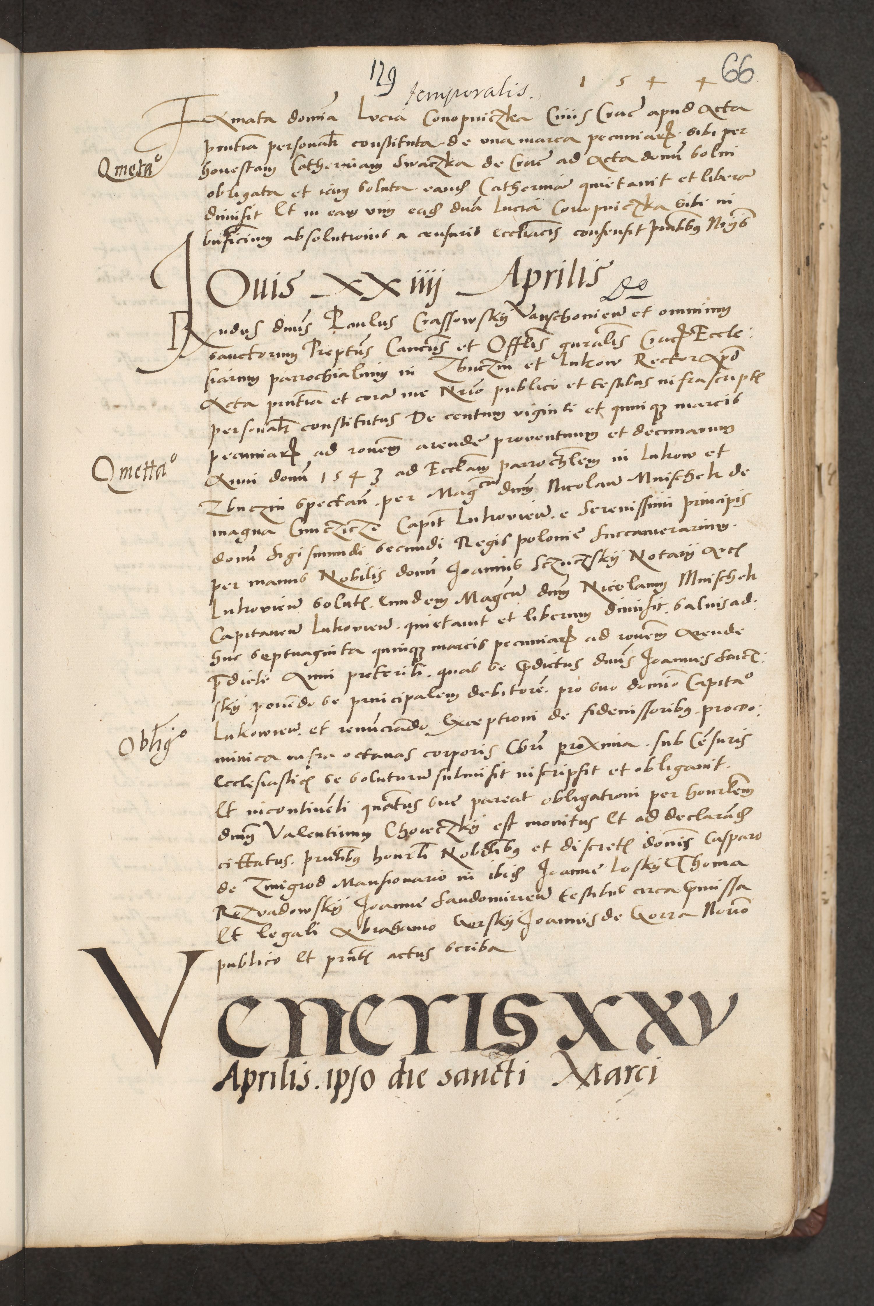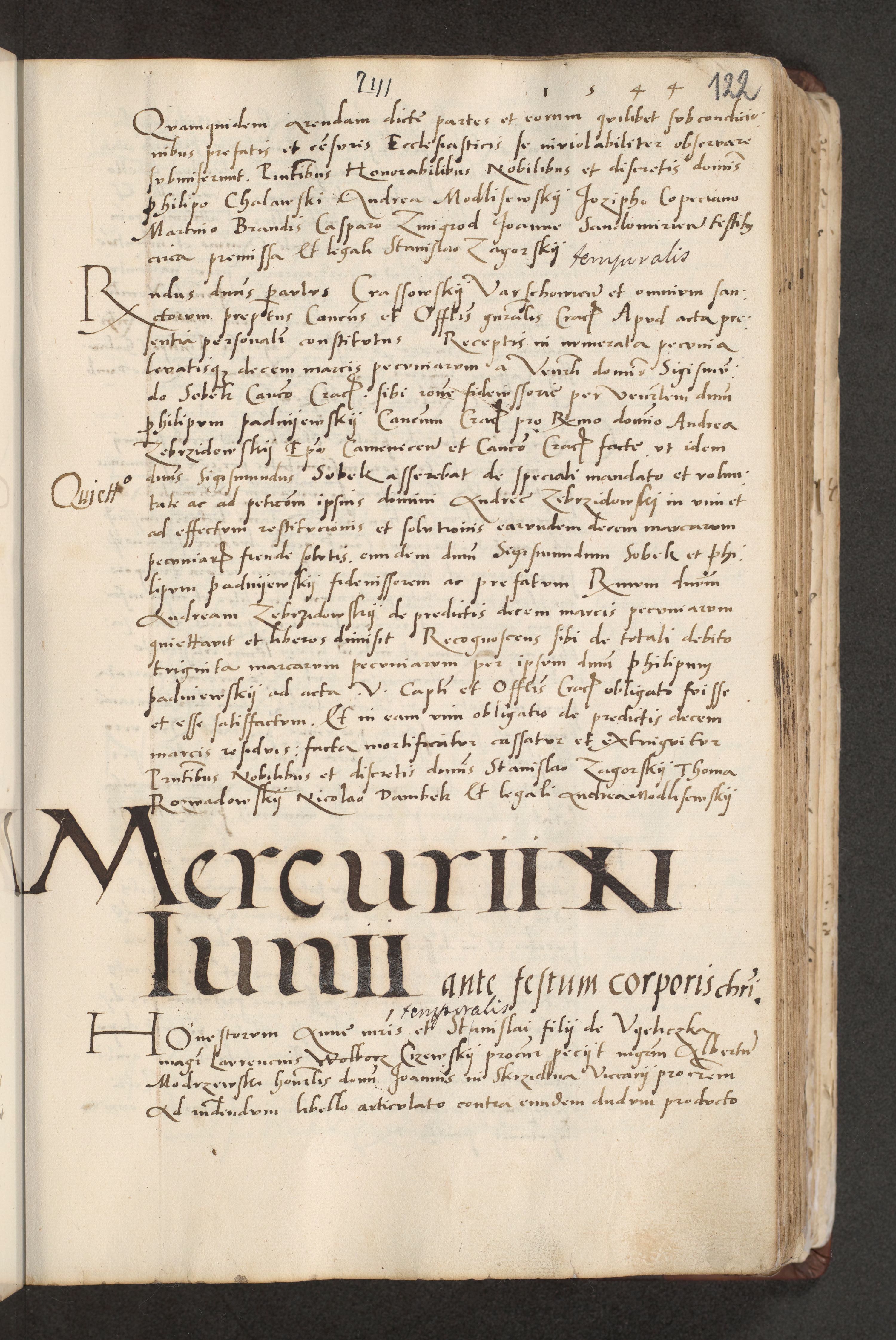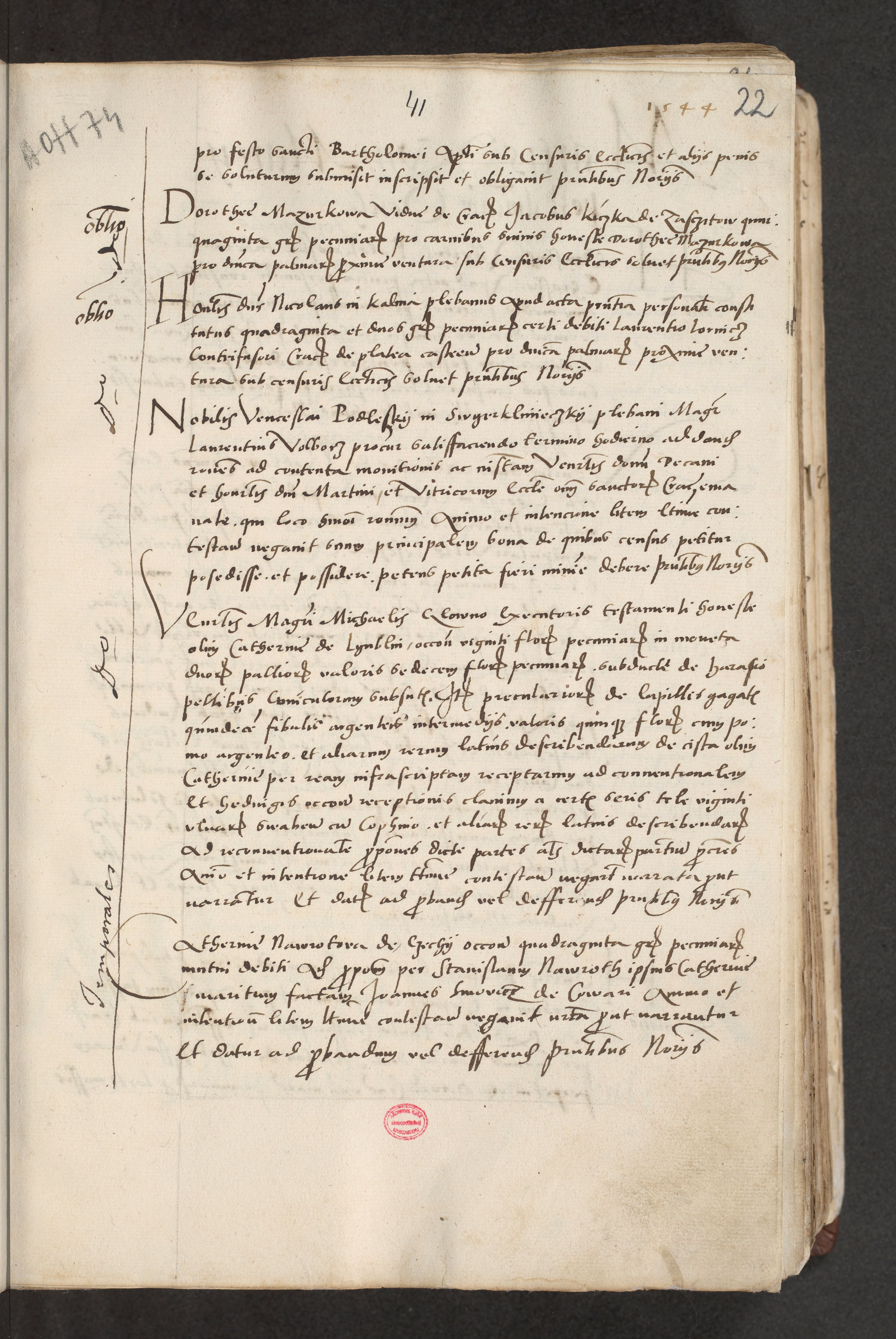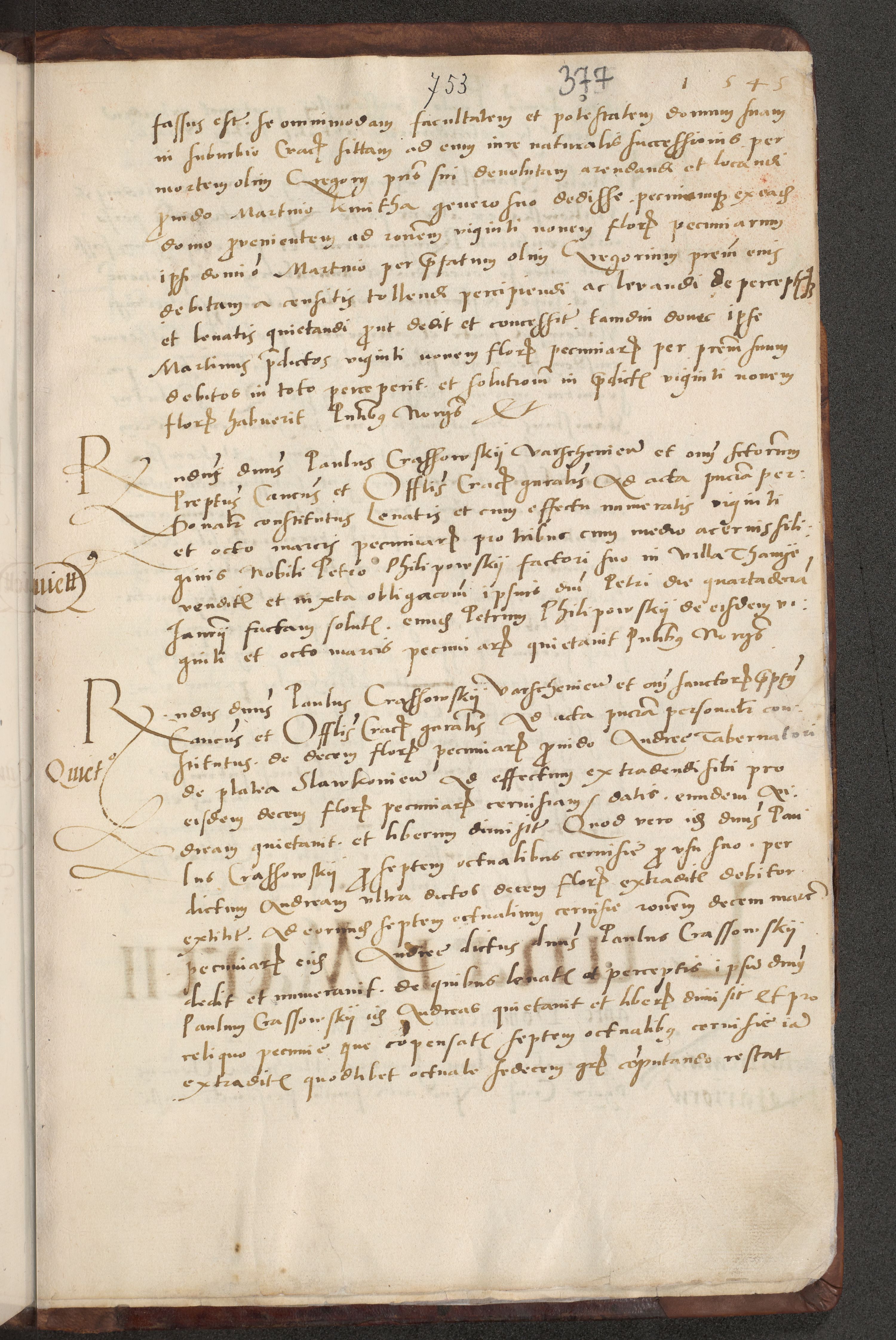 Acta actorum causarum, sentenciarum et obligacionum coram reverendo patre domino Paulo Crassowsky Warssoviensi et Omnium Sanctorum preposito, canonico et officiali generali Cracoviensi ad annum Domini millesimum quingentesimum quadraresimum quatrum, cuius indicio est secunda pontificatus sanctissimi in Christo patris et domini nostri domini Pauli divina providencia pape tercii anno ipsius decimo, a die ac mense infrascriptis feliciter continuantur