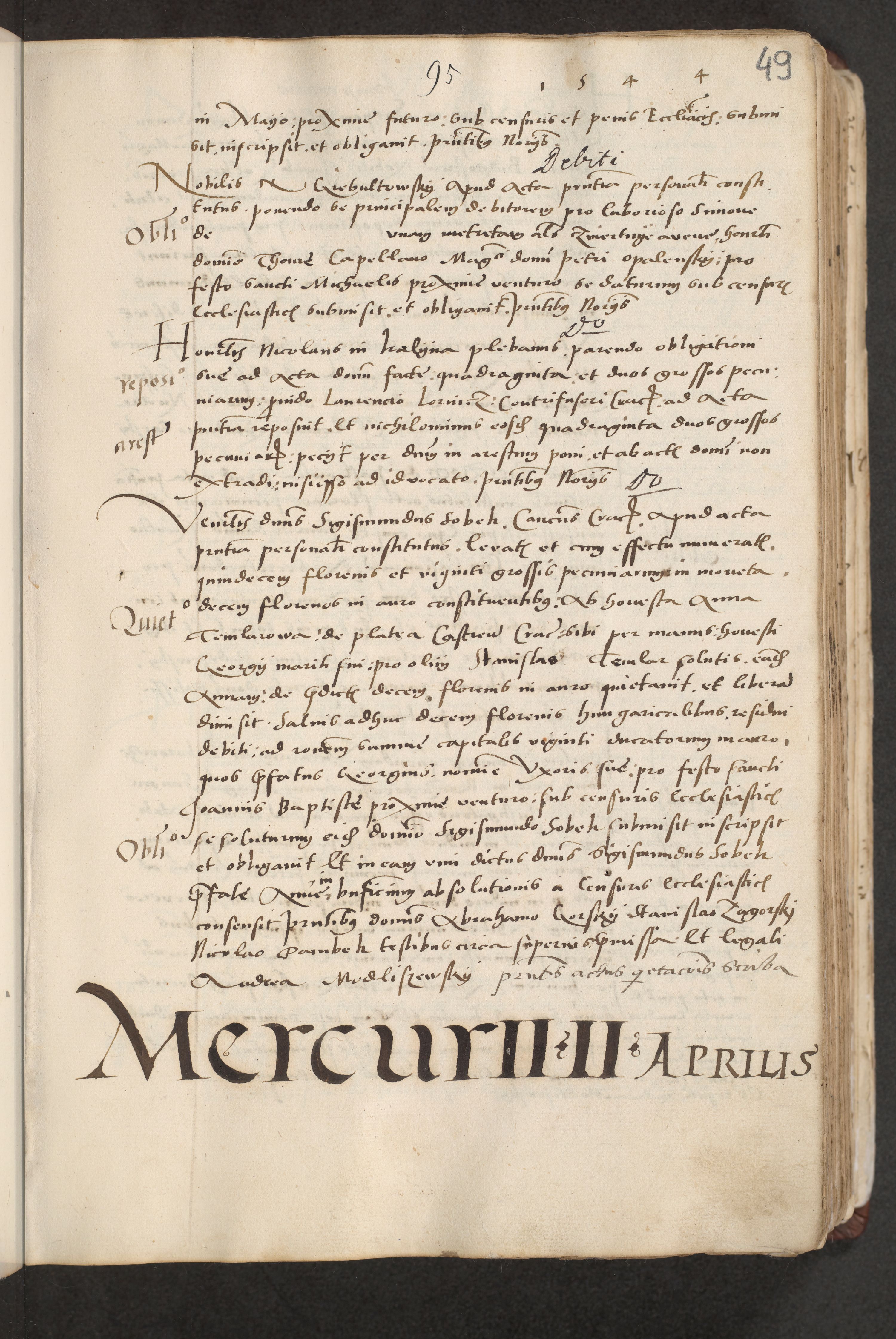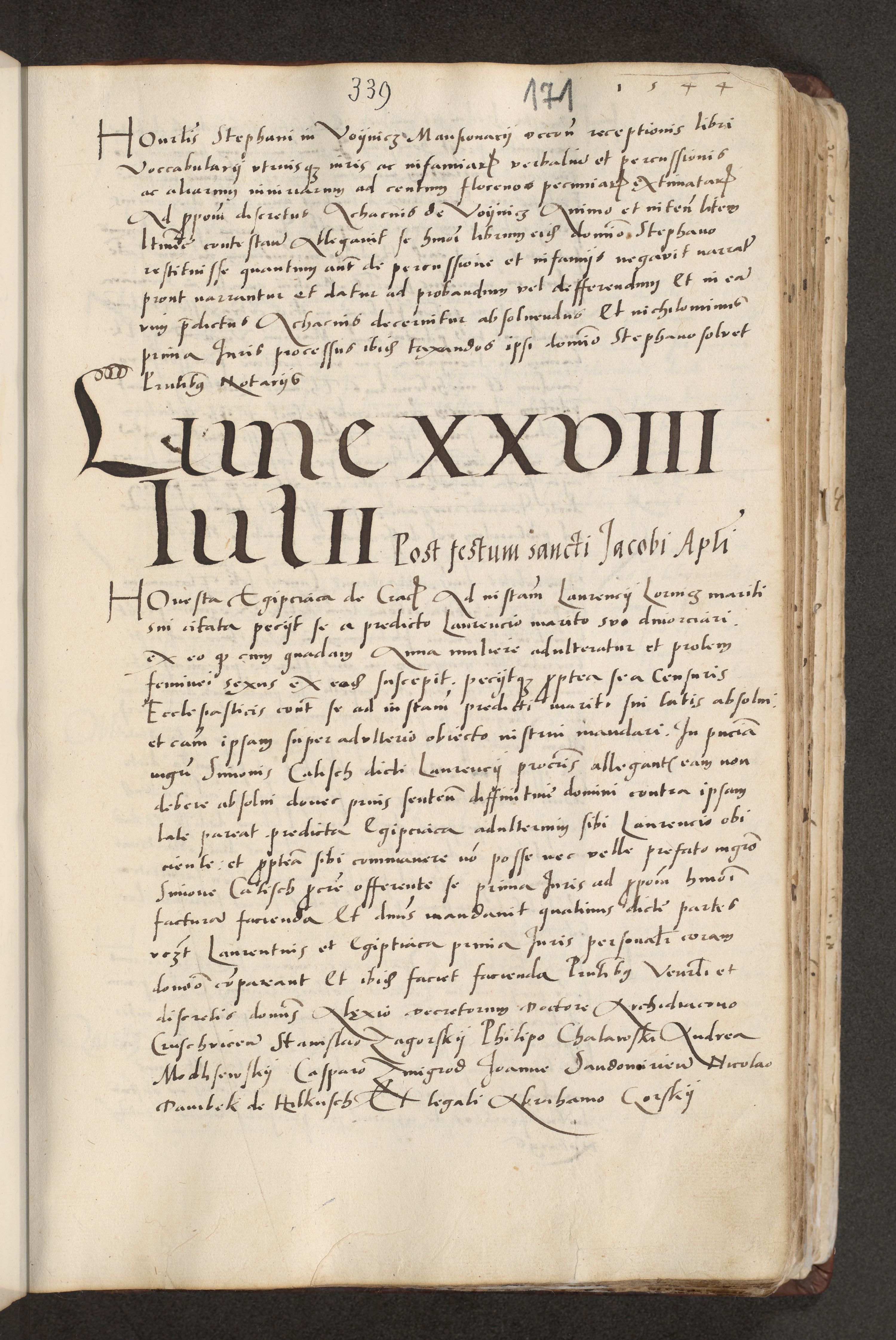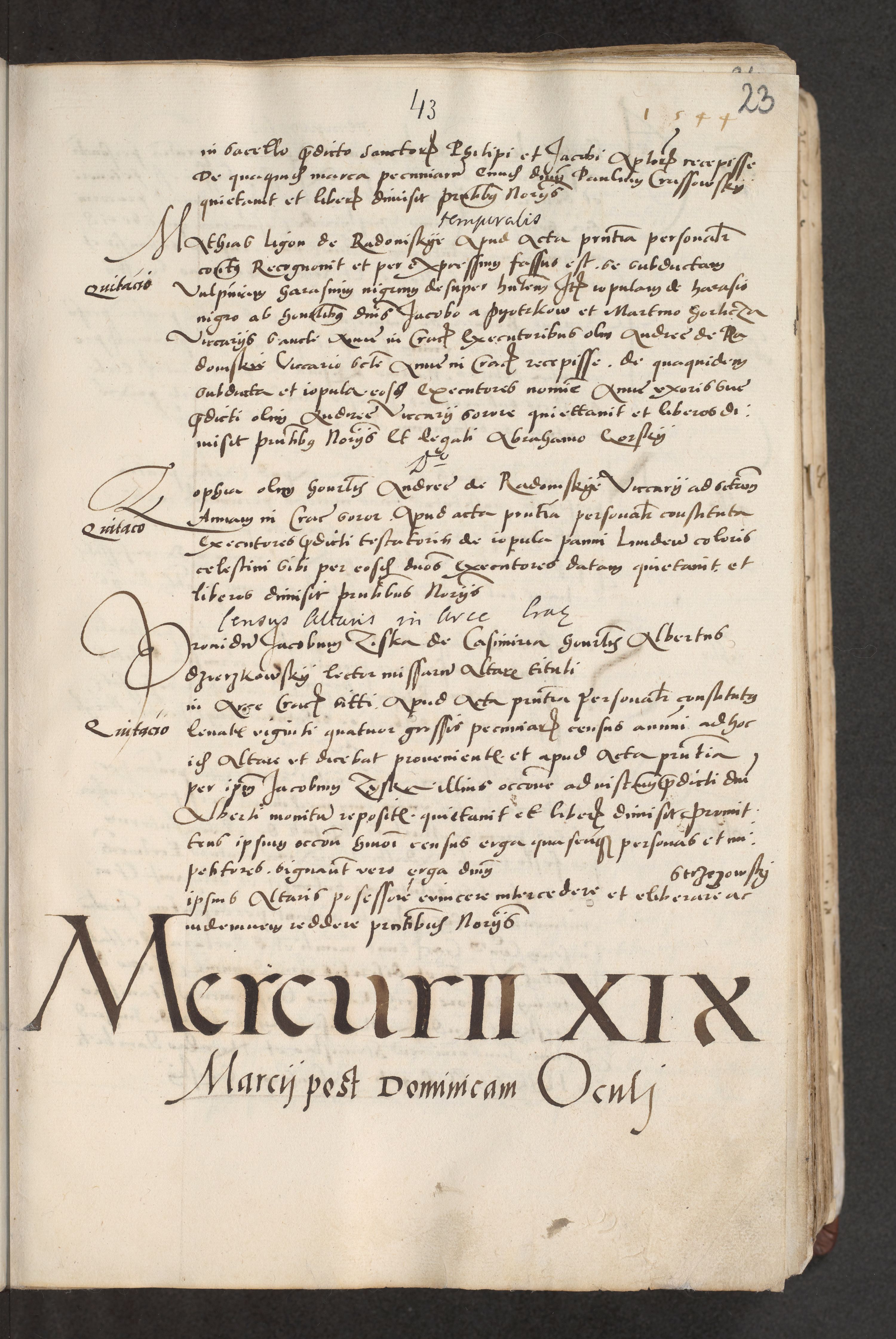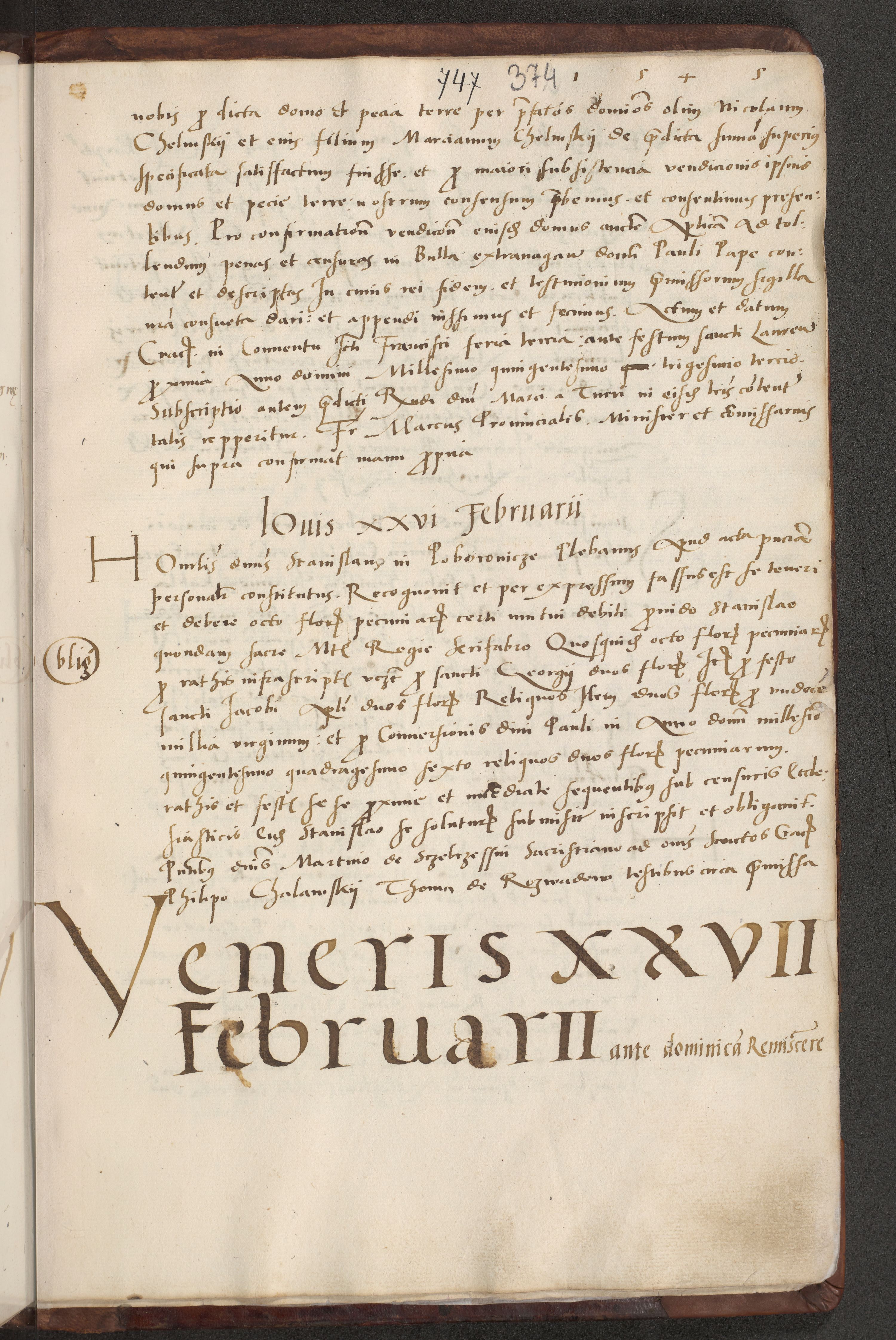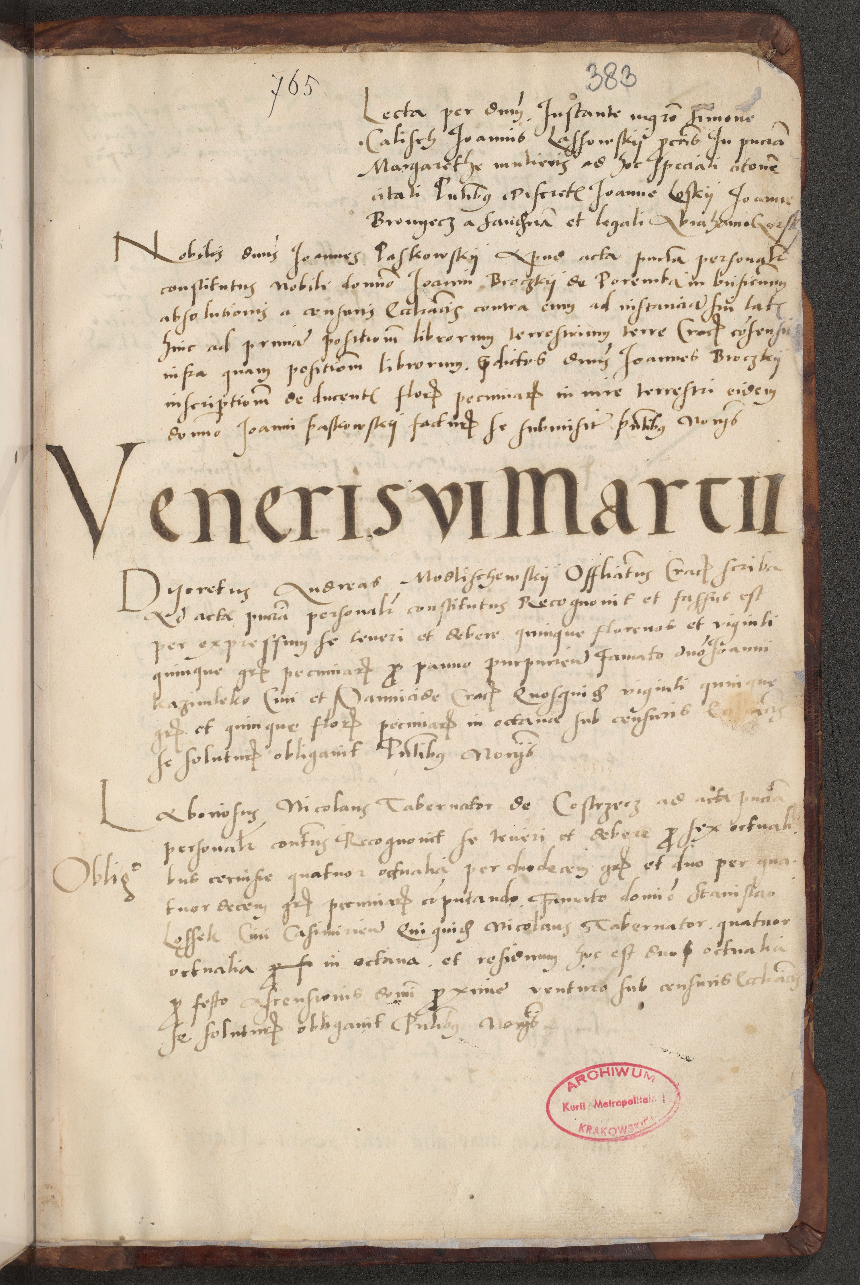 Acta actorum causarum, sentenciarum et obligacionum coram reverendo patre domino Paulo Crassowsky Warssoviensi et Omnium Sanctorum preposito, canonico et officiali generali Cracoviensi ad annum Domini millesimum quingentesimum quadraresimum quatrum, cuius indicio est secunda pontificatus sanctissimi in Christo patris et domini nostri domini Pauli divina providencia pape tercii anno ipsius decimo, a die ac mense infrascriptis feliciter continuantur