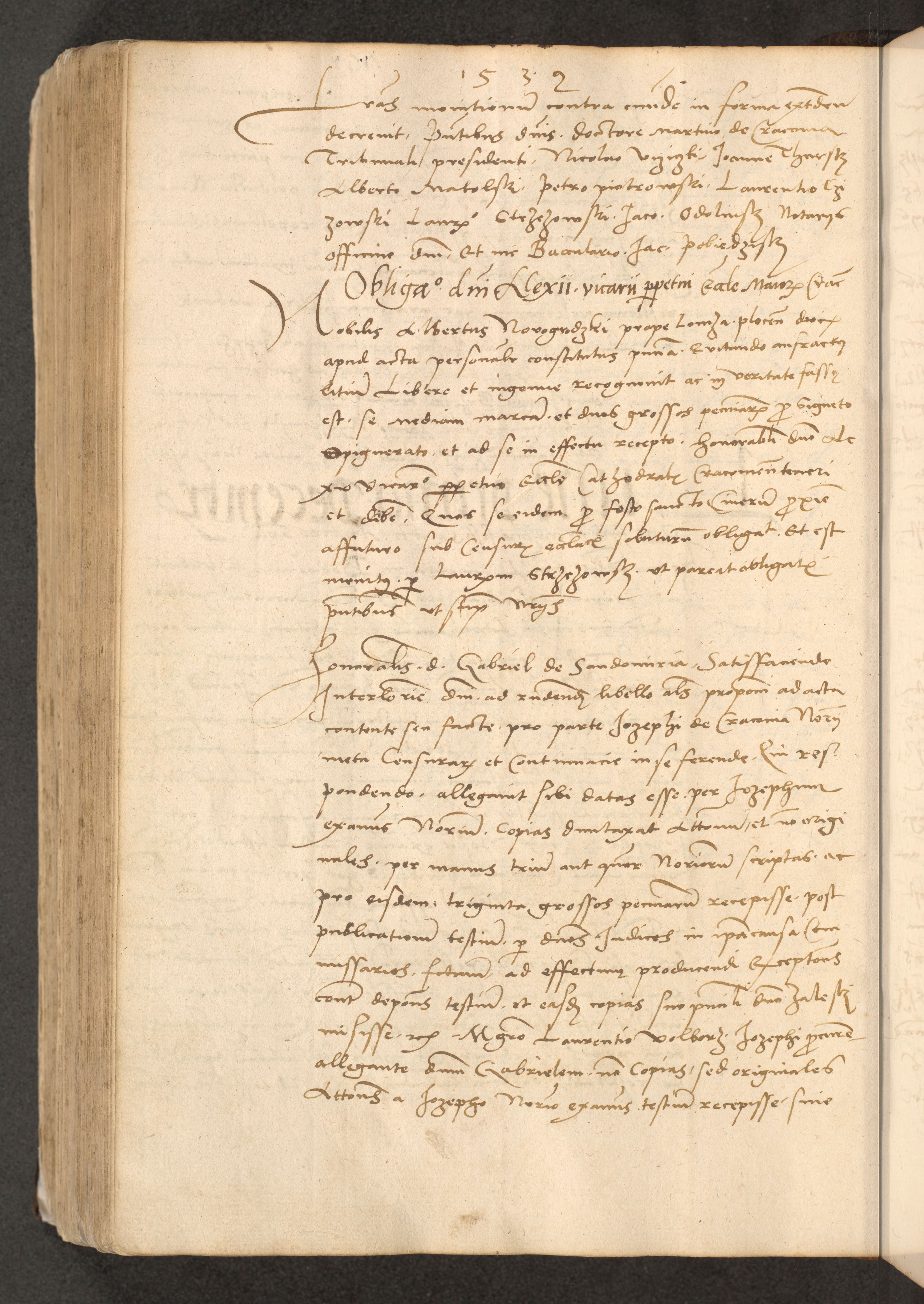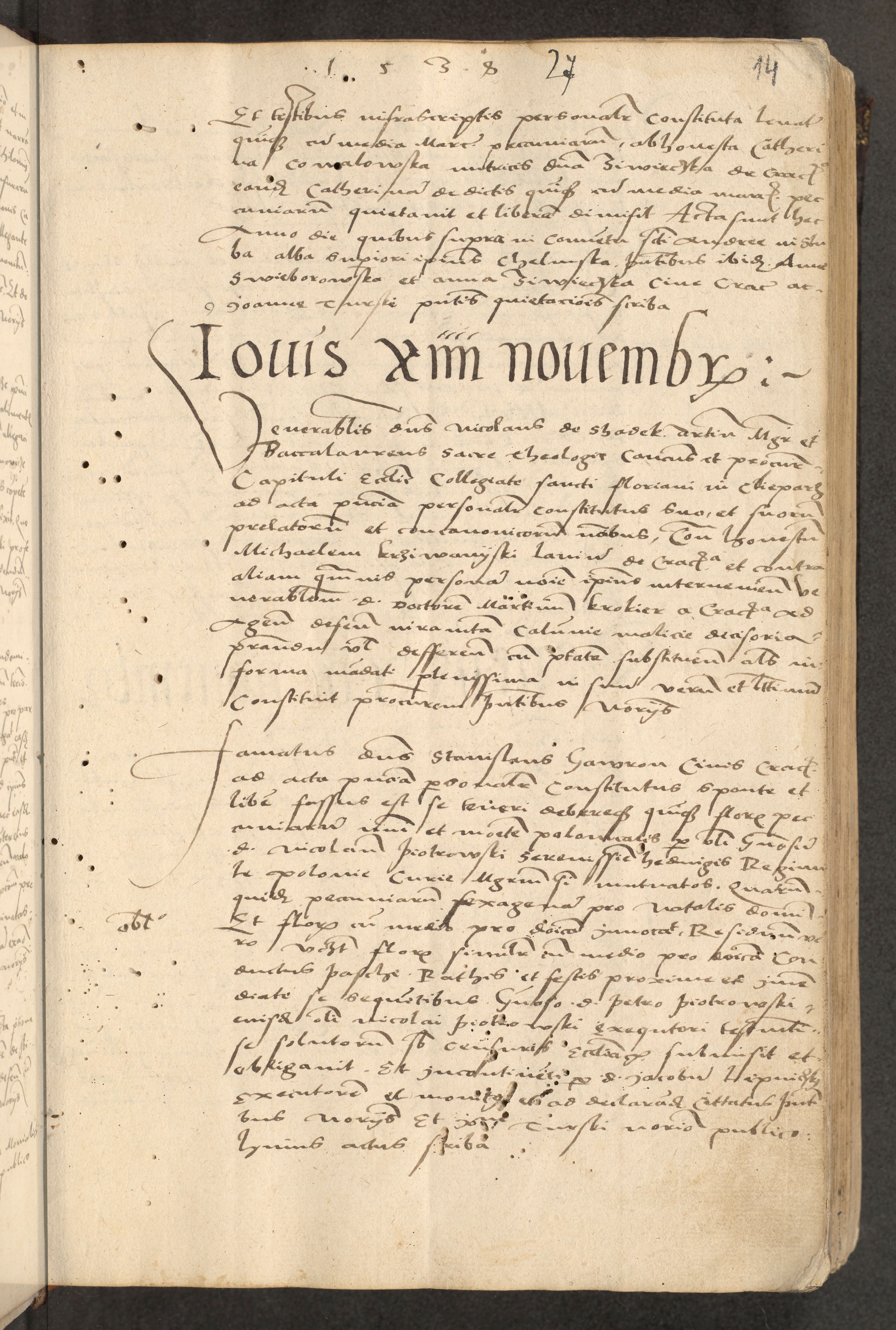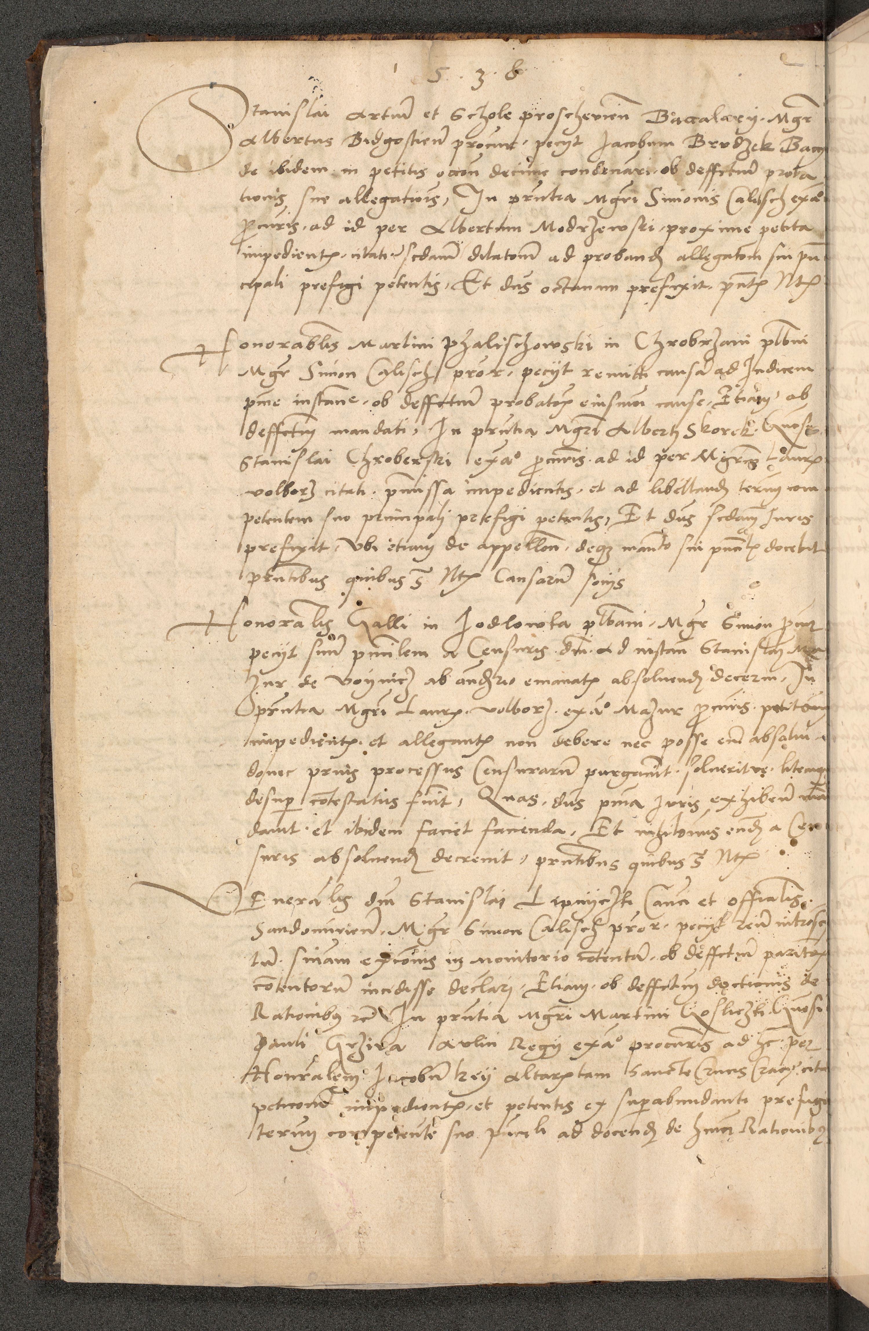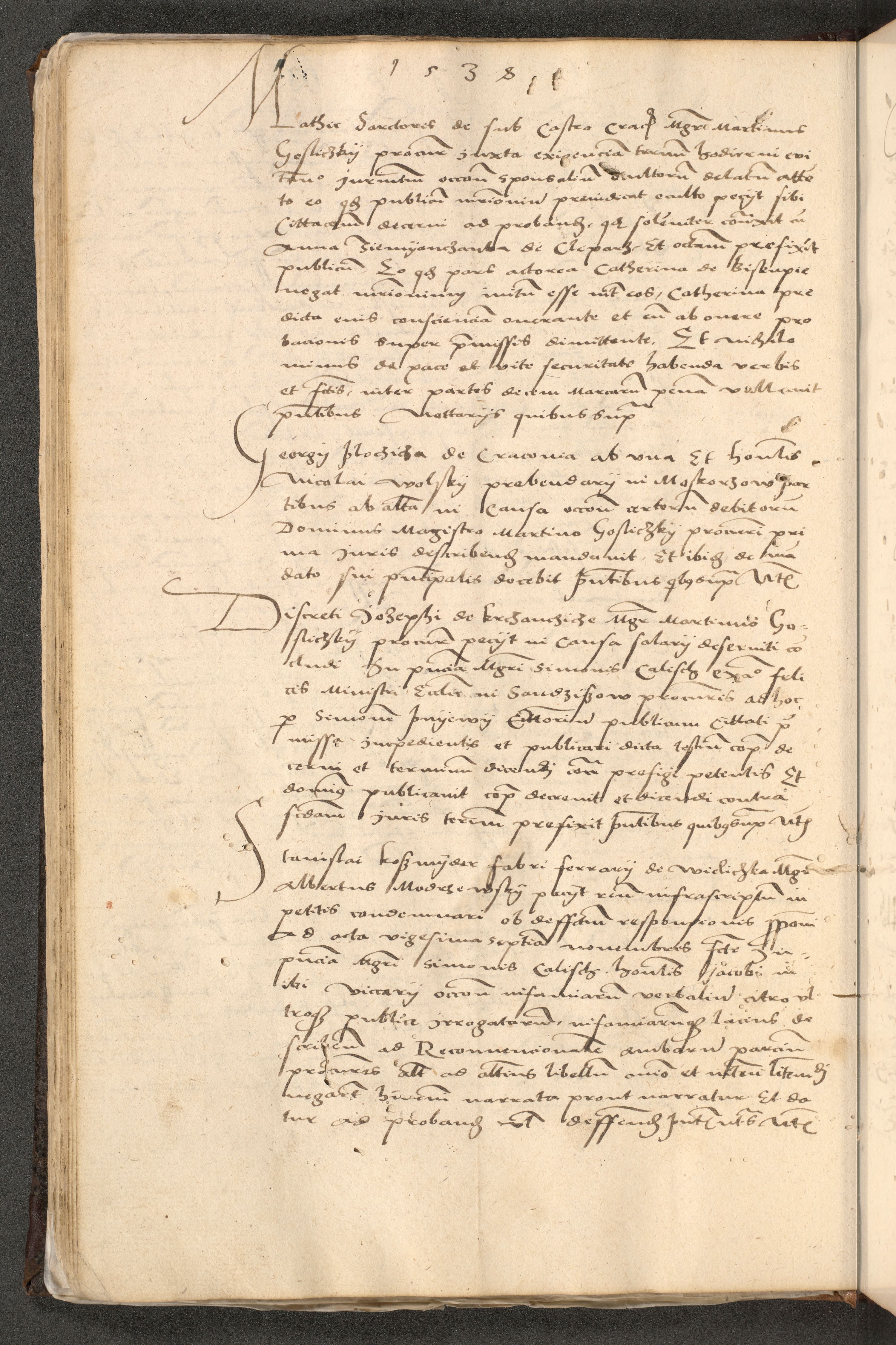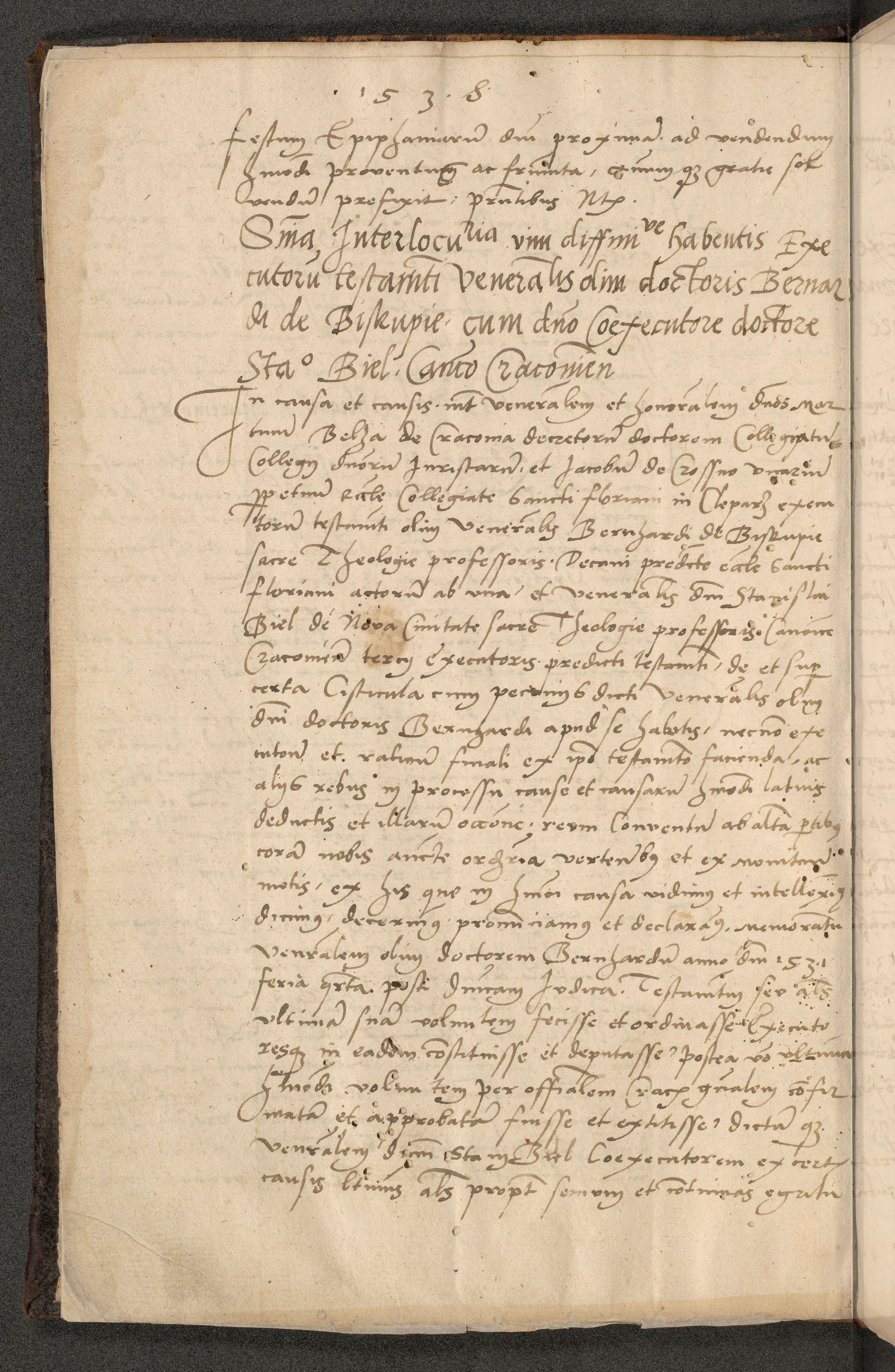 Acta actorum causarum, sentenciarum et obligationum coram reverendo patre domino Thoma Roznowski canonico et reverendissimi in Christo patris et domini domini Patri Dei gratia Cracoviensis. Sabbato, 26 Octobris in ecclesiam suam solenniter recepti officialis generalis Cracoviensis dinita administratura, qua fungebatur post mortem reverendissimi olim felicis recordationis domini Joannis Choiecki episcopi Cracoviensis et Regni Polonie cancelarii anno presenti currenti videlicet 1538, die 11 Marcii Piotrcovie in comiciis celebratis circiter 23 horam defuncti sepulto corpore nona eiusdemque obsequiis X respective Aprilis peractis electo sub indictione XI, pontificatu vero sanctissimi in Christo patris et domini nostri domini Pauli divina providencia pape tercii foeliciter moderni, anno quarto, incepta felicibus auspiciis continuantur ordine processu infrascripto