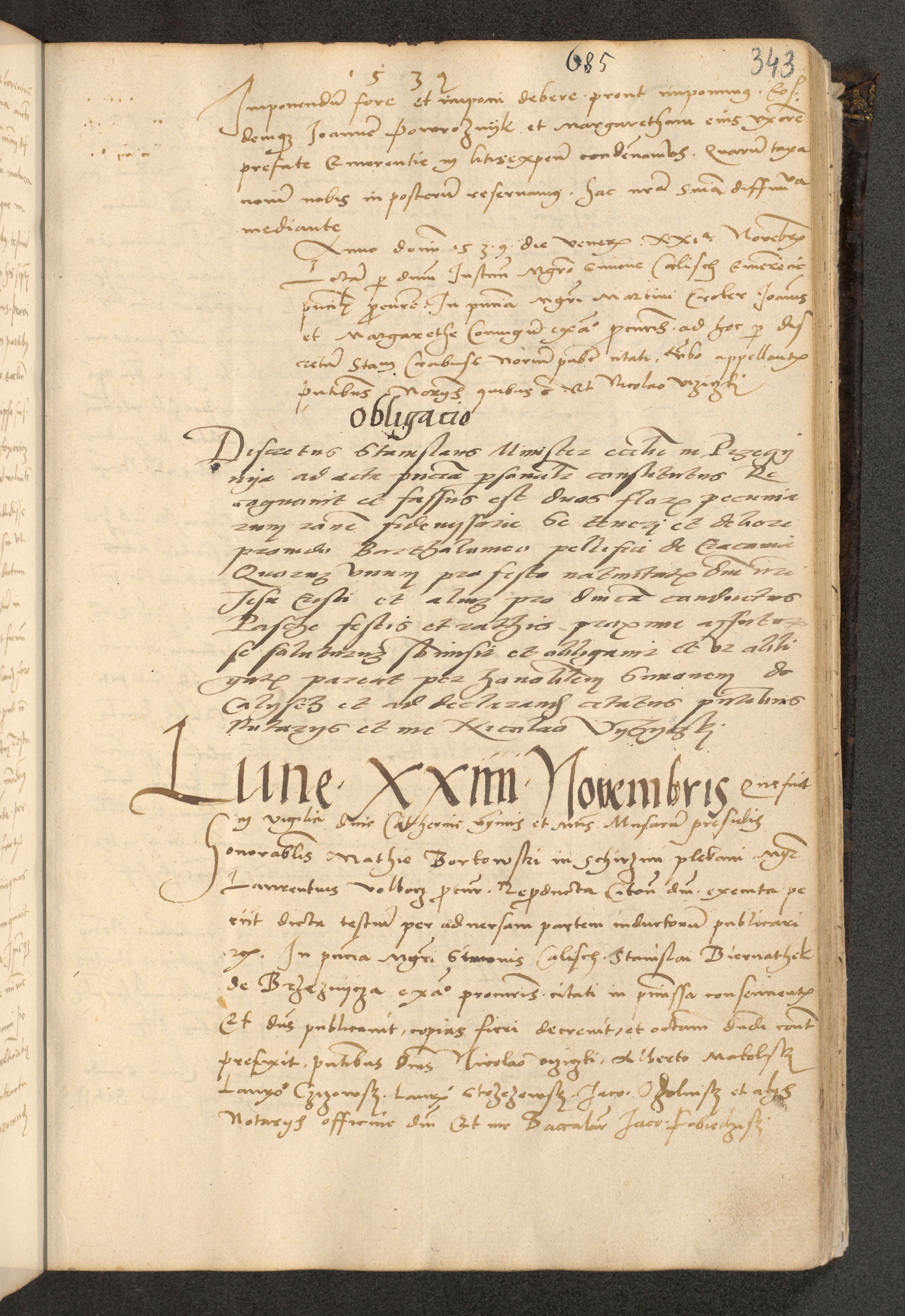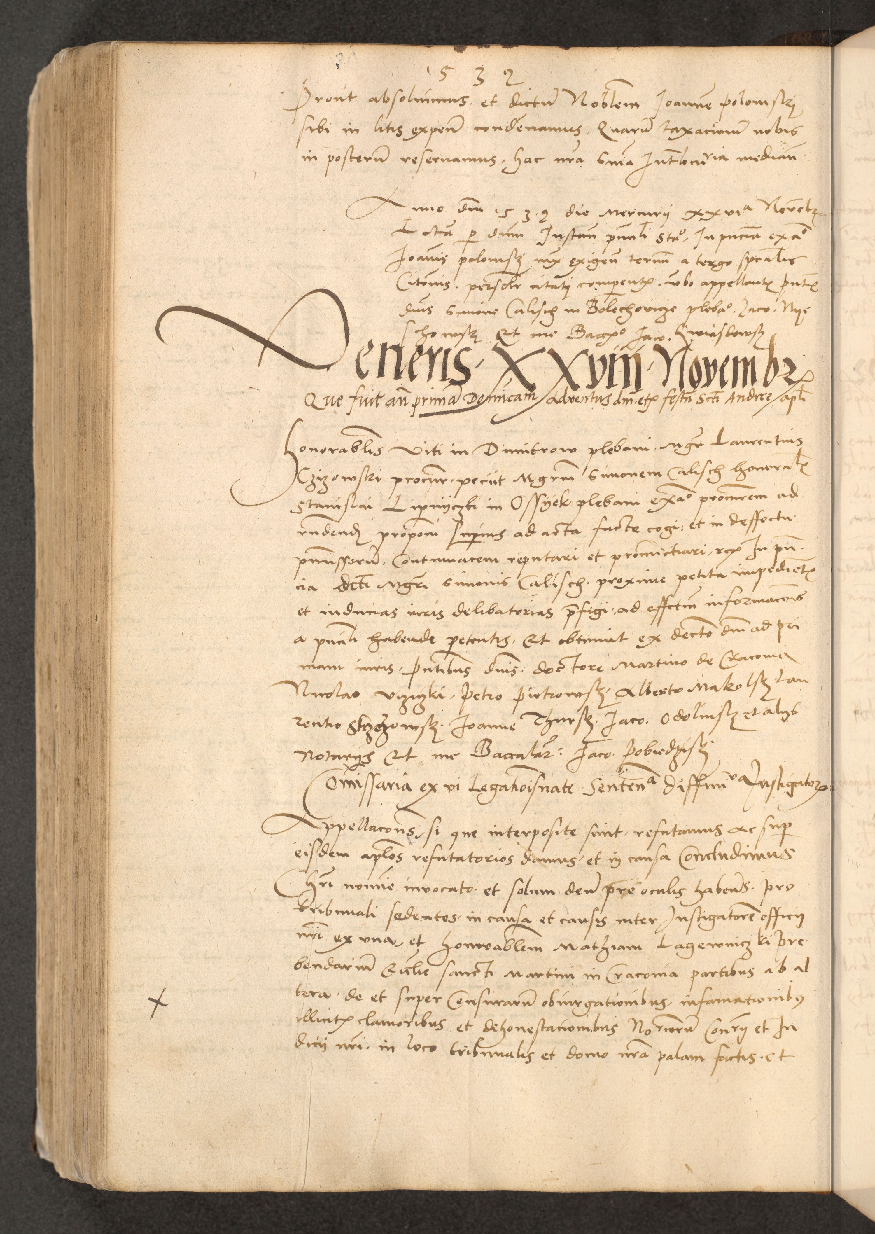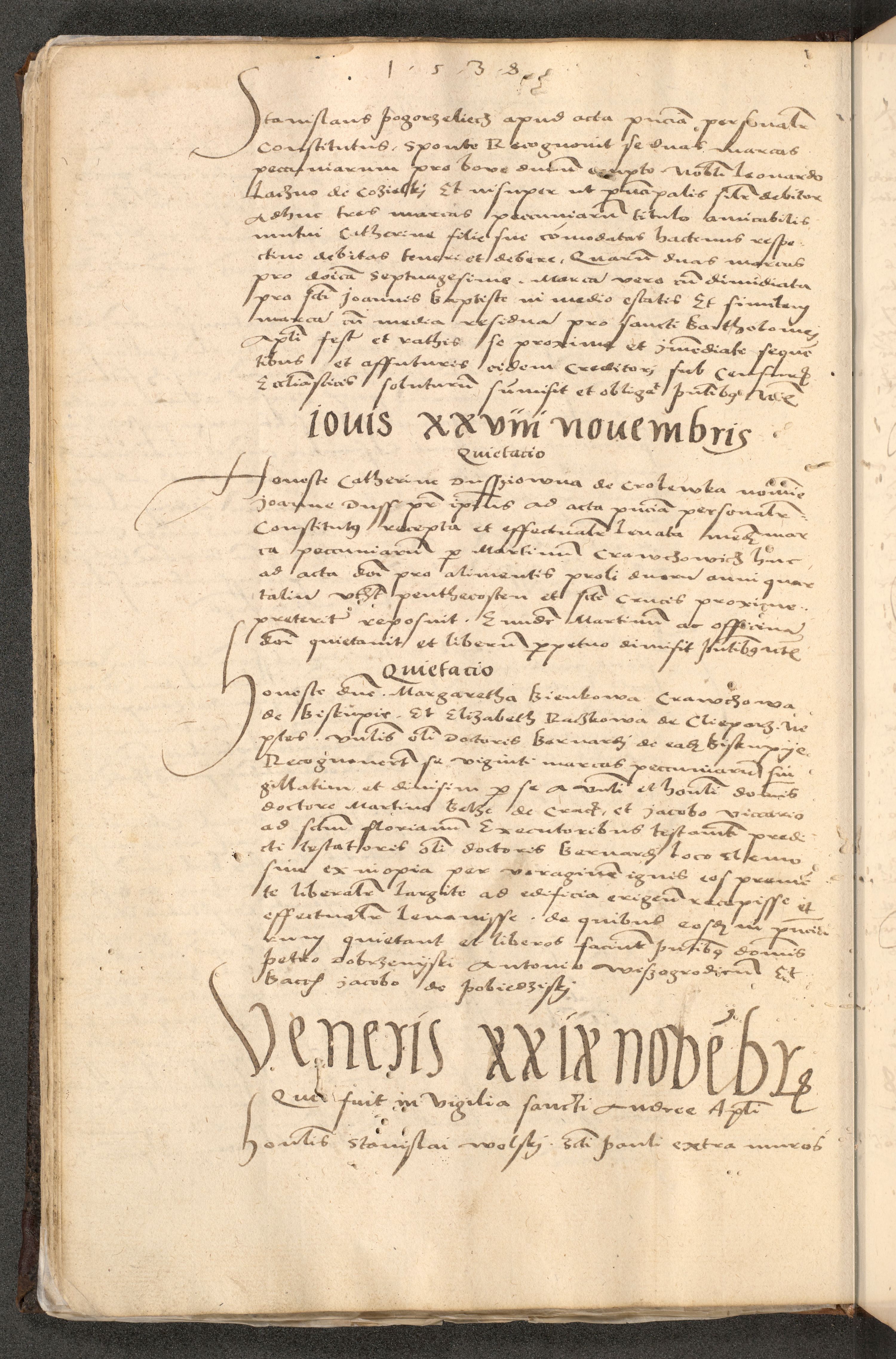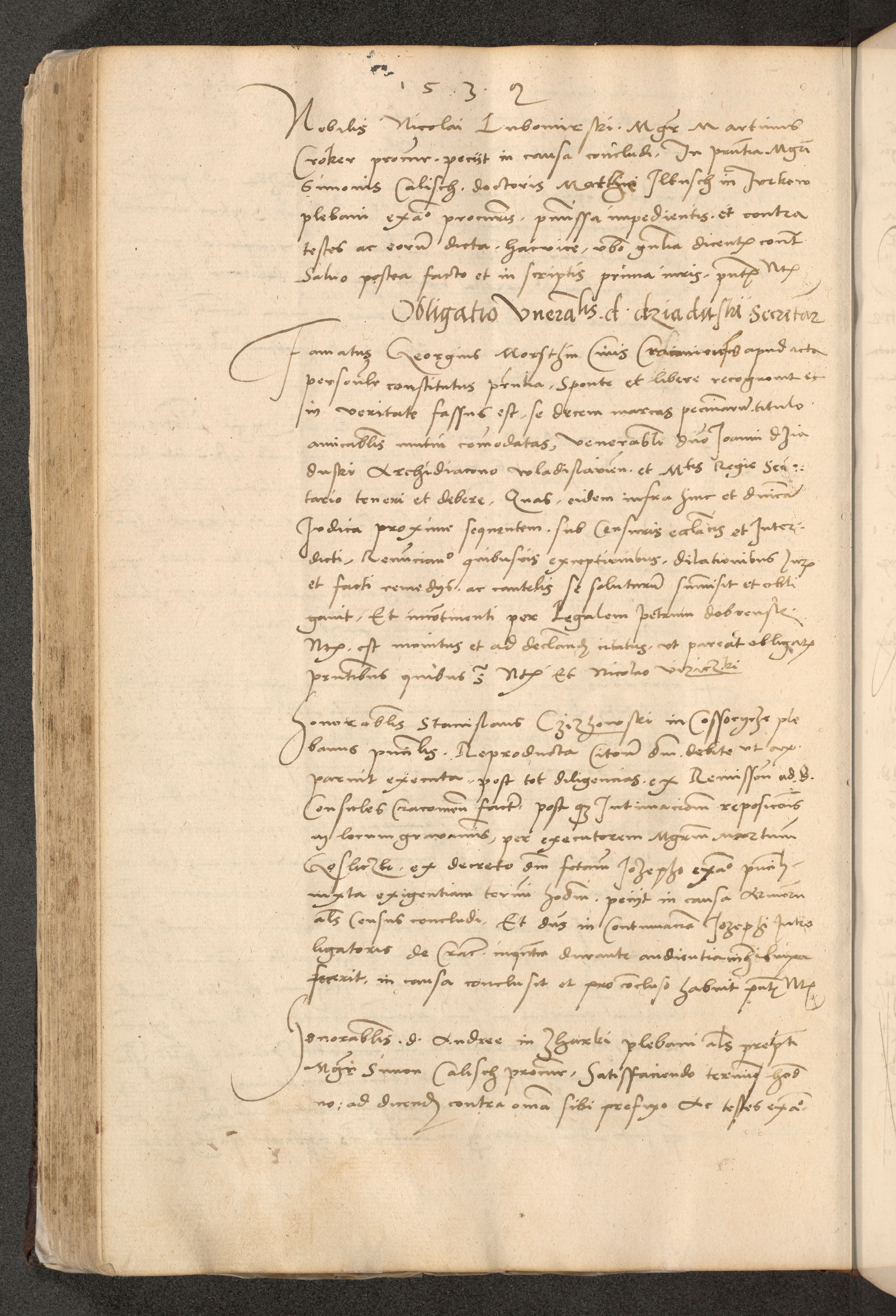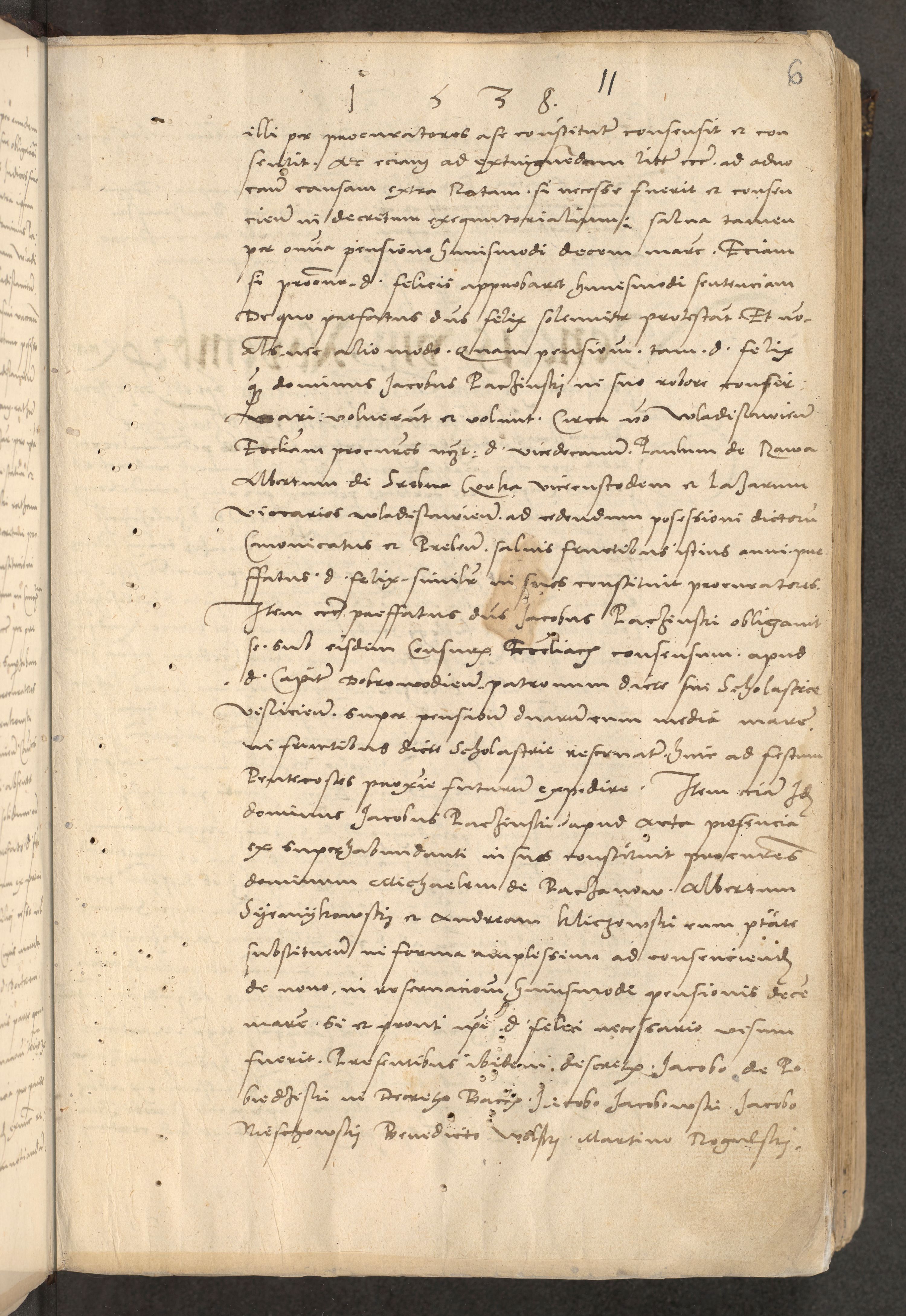 Acta actorum causarum, sentenciarum et obligationum coram reverendo patre domino Thoma Roznowski canonico et reverendissimi in Christo patris et domini domini Patri Dei gratia Cracoviensis. Sabbato, 26 Octobris in ecclesiam suam solenniter recepti officialis generalis Cracoviensis dinita administratura, qua fungebatur post mortem reverendissimi olim felicis recordationis domini Joannis Choiecki episcopi Cracoviensis et Regni Polonie cancelarii anno presenti currenti videlicet 1538, die 11 Marcii Piotrcovie in comiciis celebratis circiter 23 horam defuncti sepulto corpore nona eiusdemque obsequiis X respective Aprilis peractis electo sub indictione XI, pontificatu vero sanctissimi in Christo patris et domini nostri domini Pauli divina providencia pape tercii foeliciter moderni, anno quarto, incepta felicibus auspiciis continuantur ordine processu infrascripto