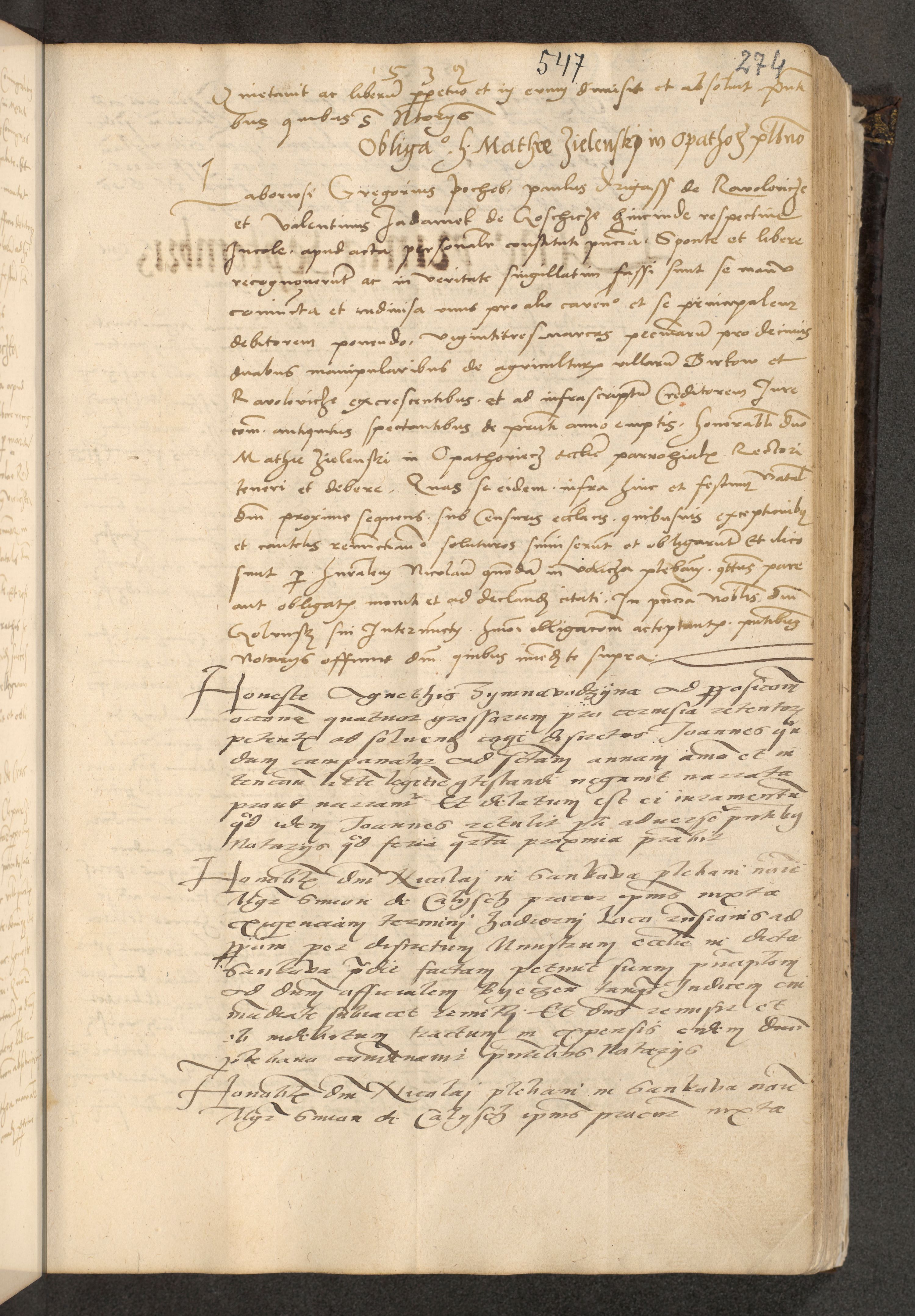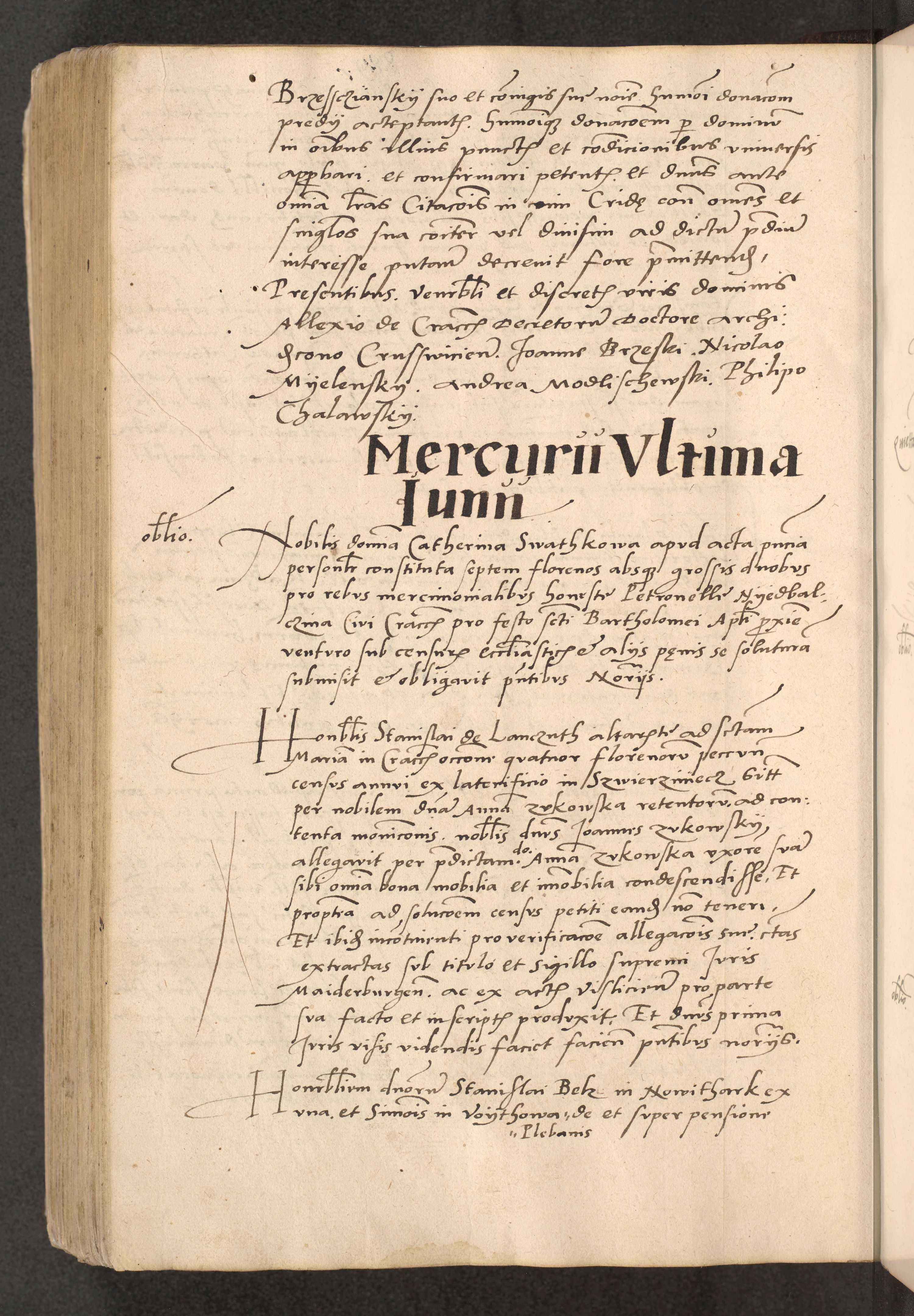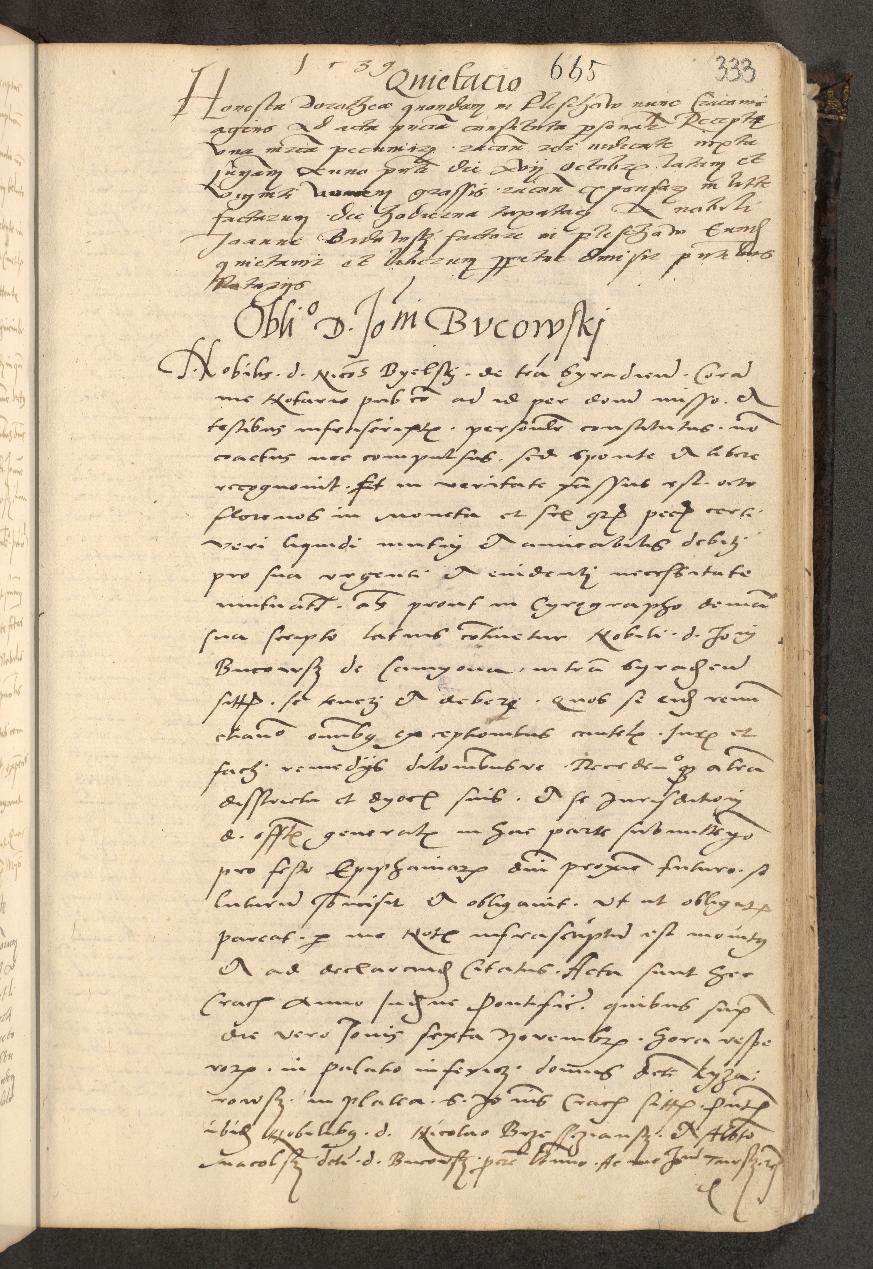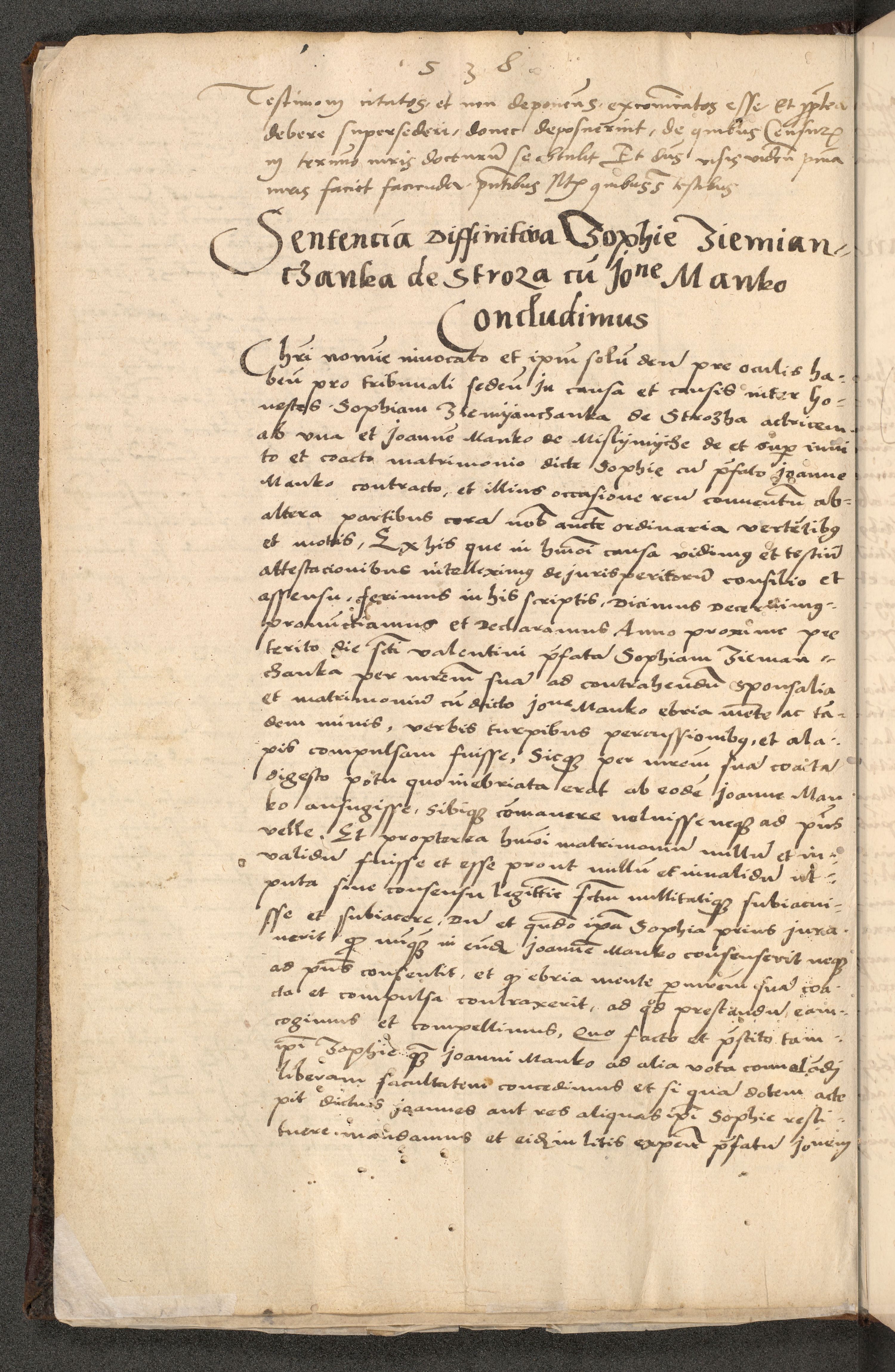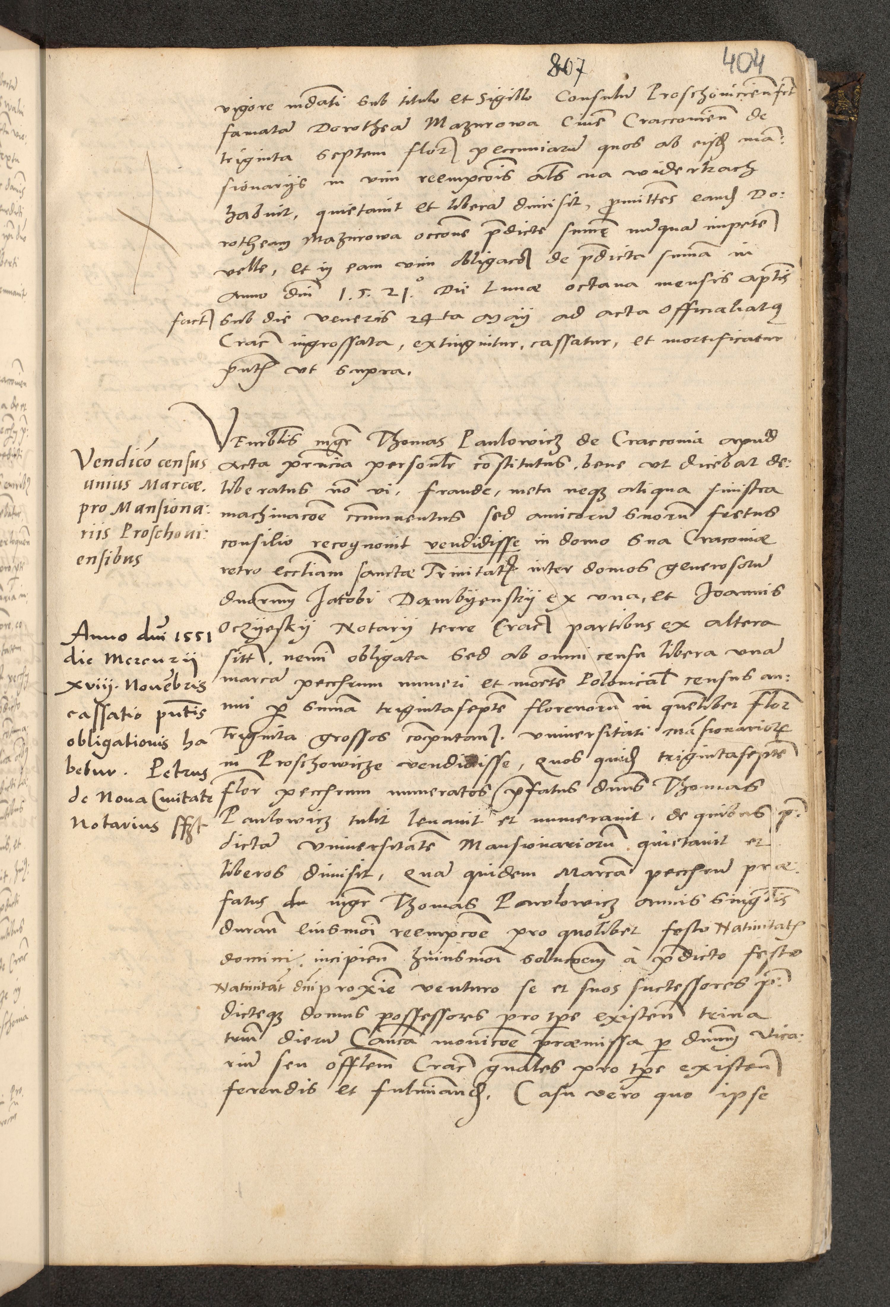 Acta actorum causarum, sentenciarum et obligationum coram reverendo patre domino Thoma Roznowski canonico et reverendissimi in Christo patris et domini domini Patri Dei gratia Cracoviensis. Sabbato, 26 Octobris in ecclesiam suam solenniter recepti officialis generalis Cracoviensis dinita administratura, qua fungebatur post mortem reverendissimi olim felicis recordationis domini Joannis Choiecki episcopi Cracoviensis et Regni Polonie cancelarii anno presenti currenti videlicet 1538, die 11 Marcii Piotrcovie in comiciis celebratis circiter 23 horam defuncti sepulto corpore nona eiusdemque obsequiis X respective Aprilis peractis electo sub indictione XI, pontificatu vero sanctissimi in Christo patris et domini nostri domini Pauli divina providencia pape tercii foeliciter moderni, anno quarto, incepta felicibus auspiciis continuantur ordine processu infrascripto